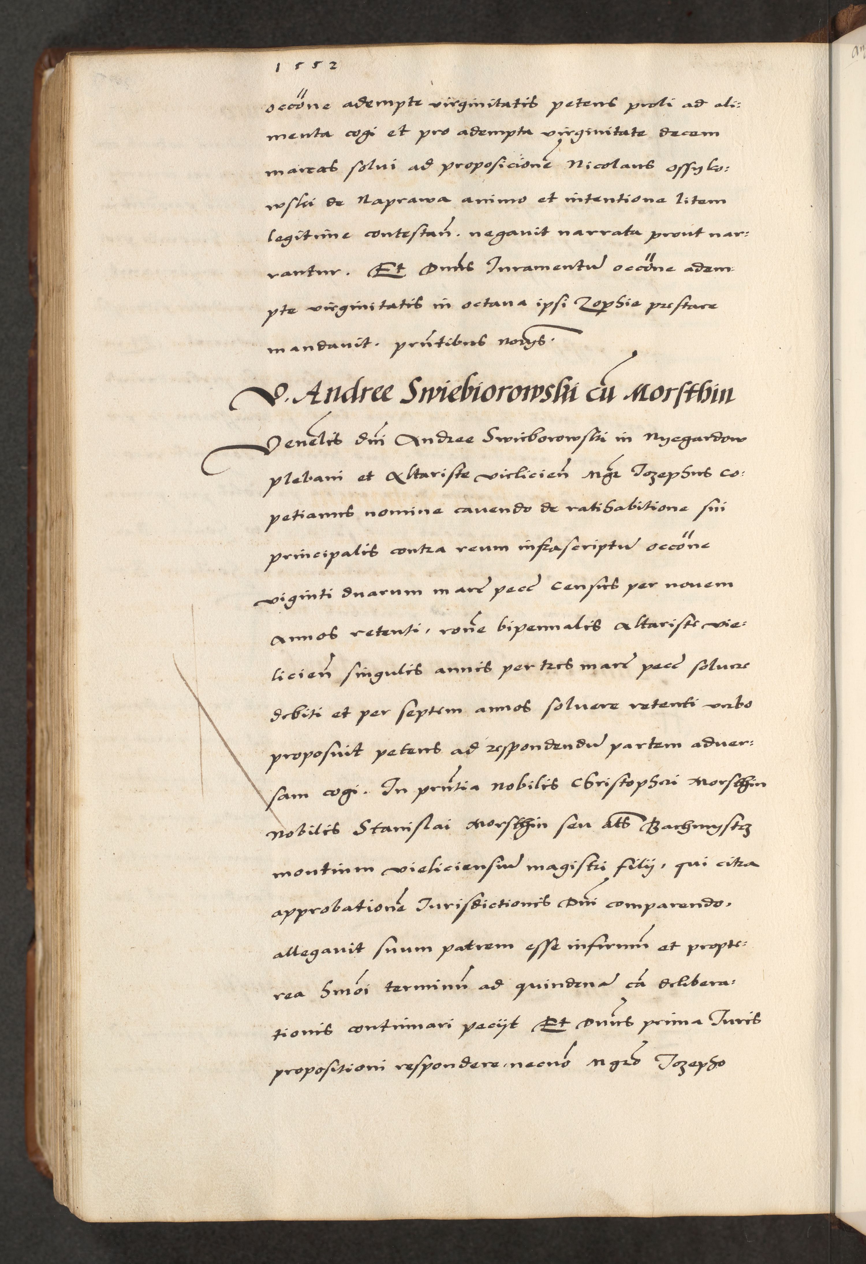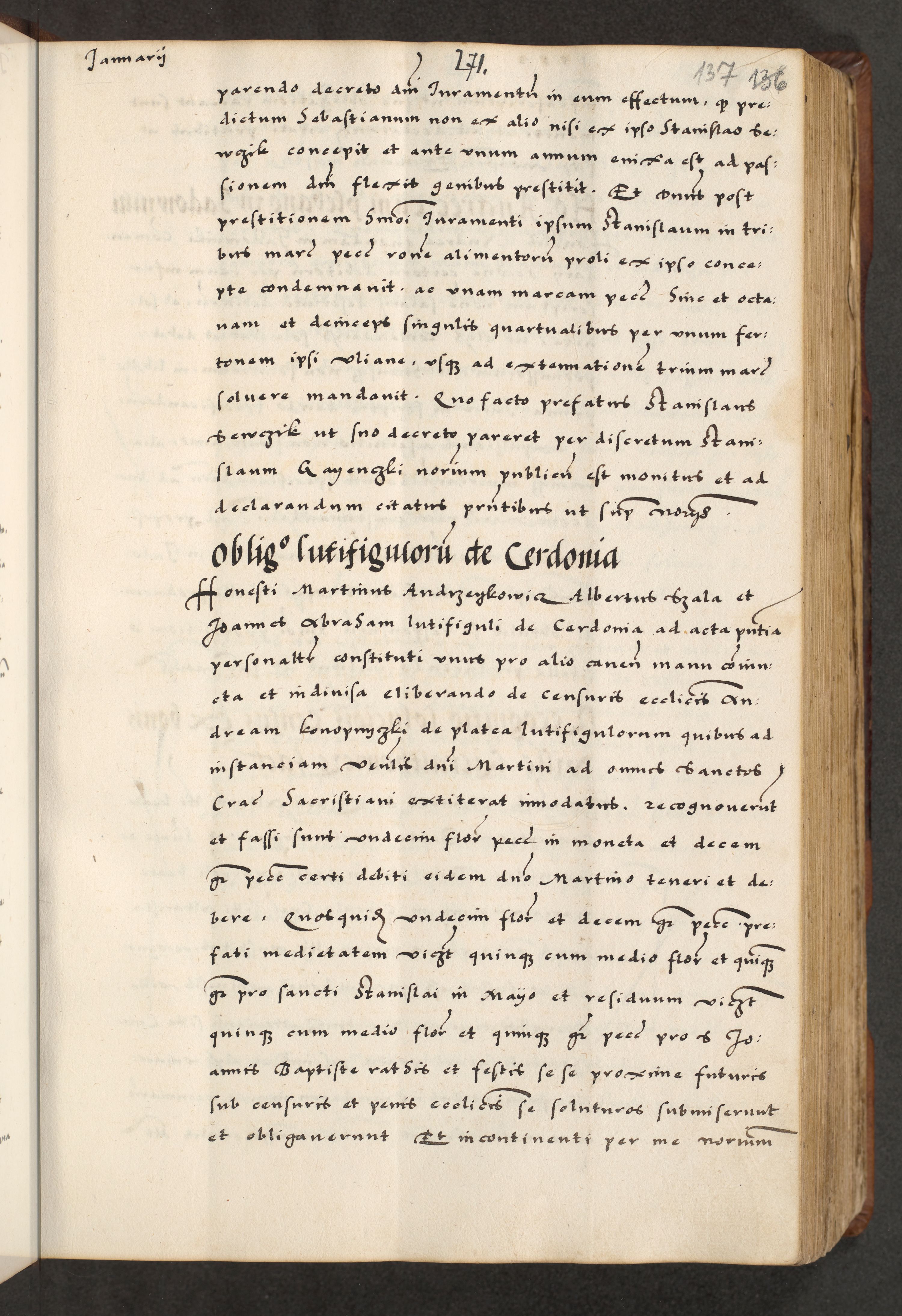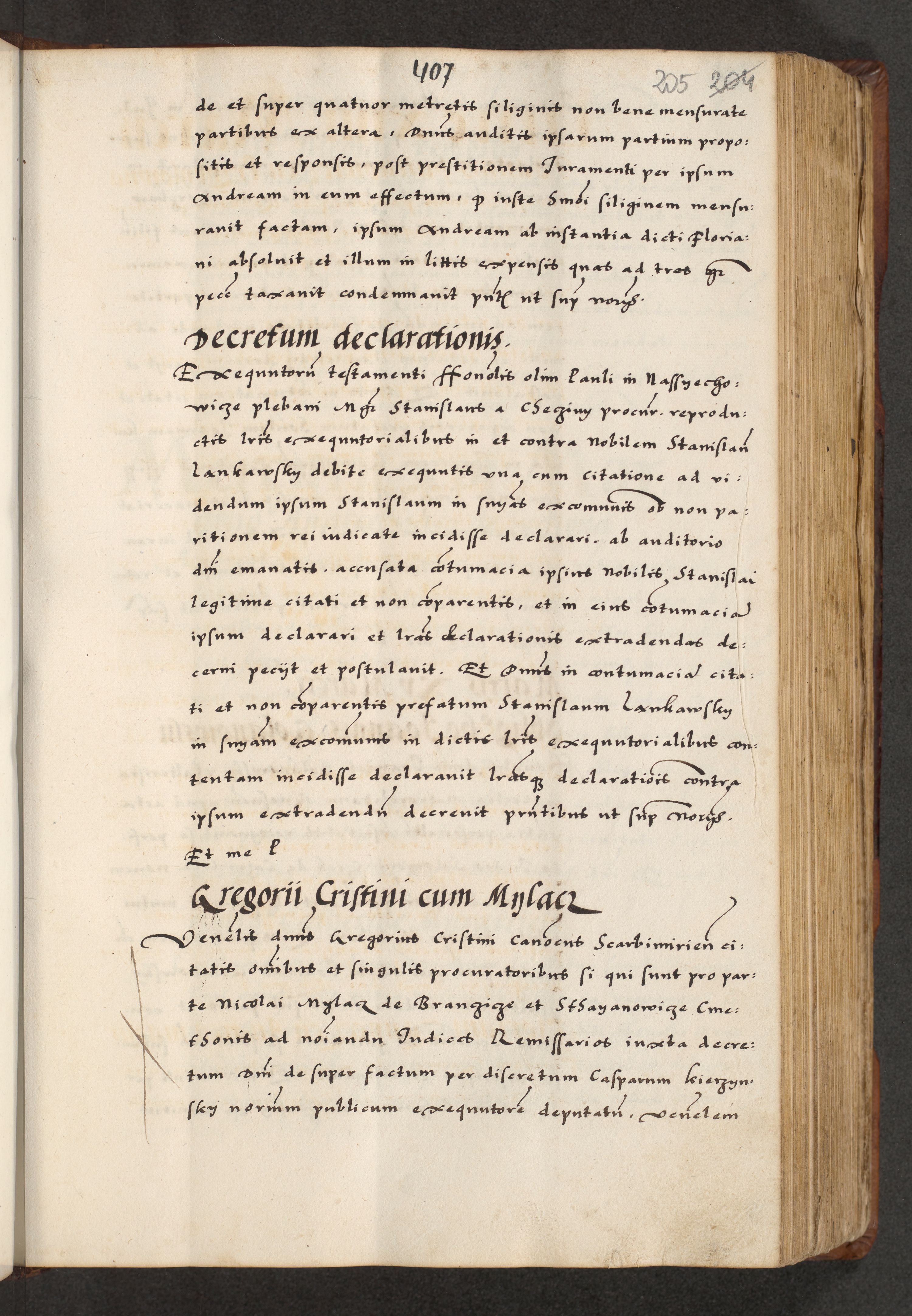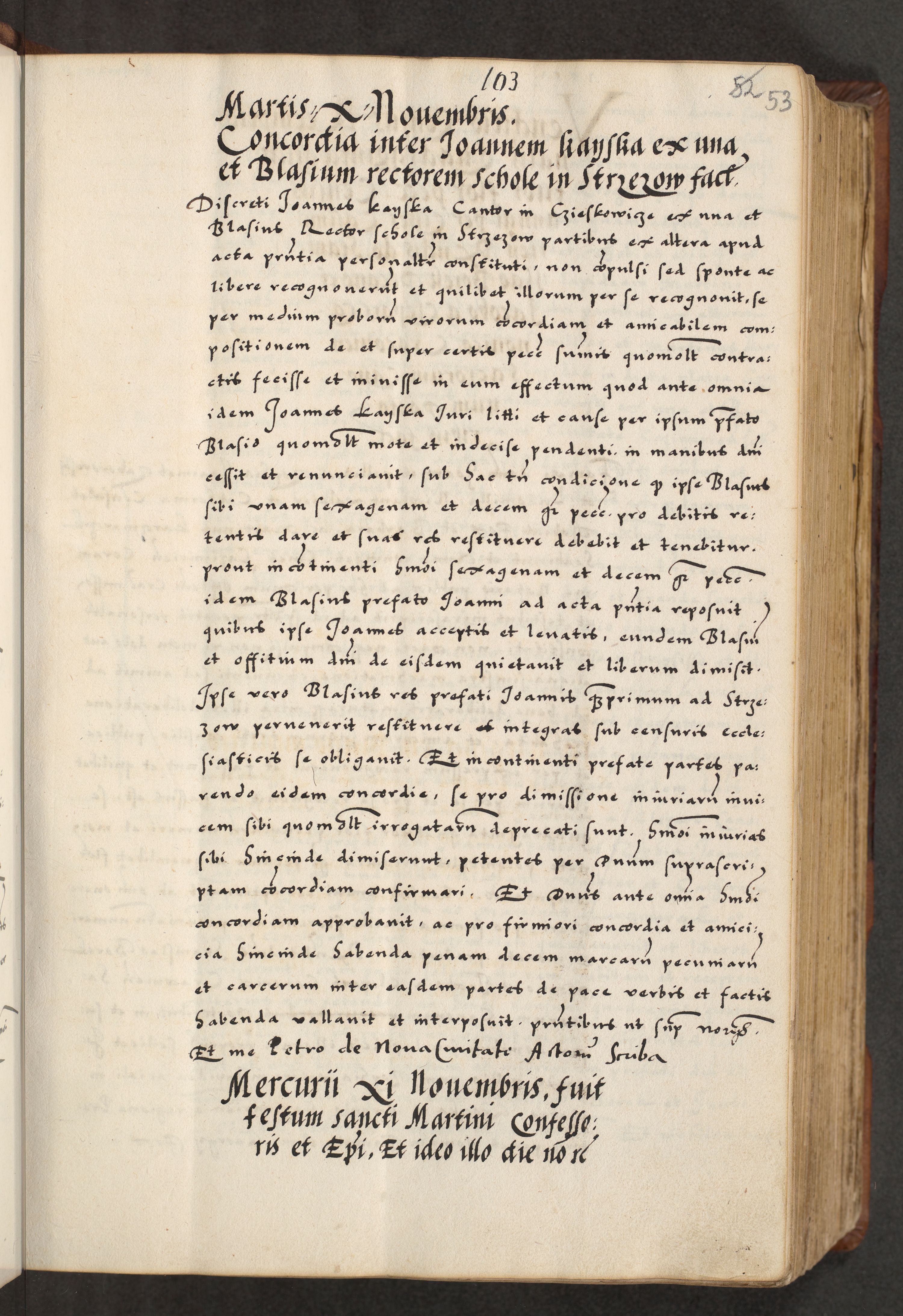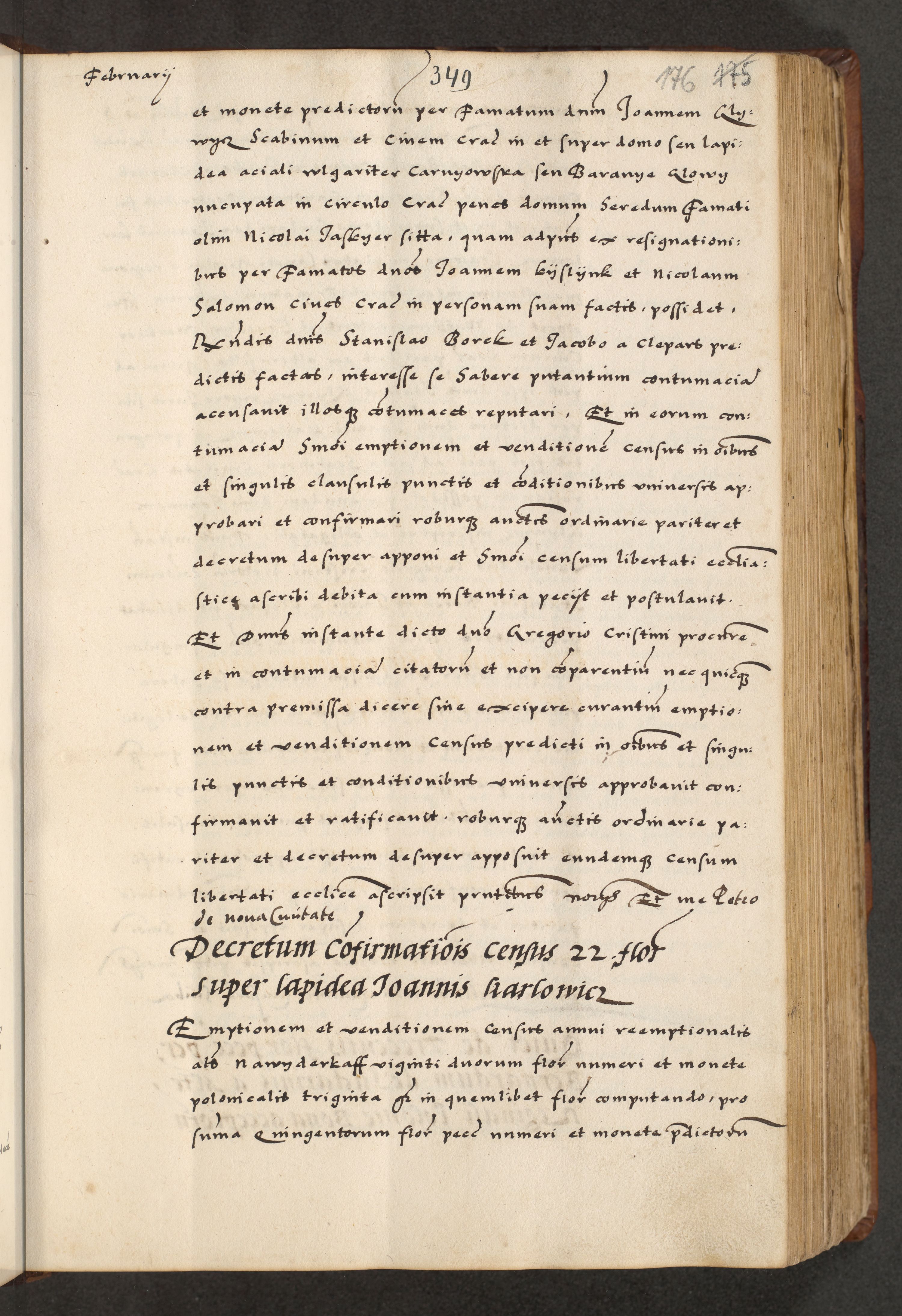 [A]cta actorum causarum, sententiarum tam diffinitivarum quam interloquutoriarum, obligationum, constitutionum et contractuum coram reverendo patre domino Petro Porembski preposito Osvieczimensi, canonico et officiali generali Cracoviensi de anno Domini millesimo quingentesimo quinguagesimo primo, cuius indictio est nona, pontificatus sanctissimi in Christo patris et domini nostri domini Juliii divina providencia pape tercii, anno secundo, a die et mense infrascriptis feliciter continiantur