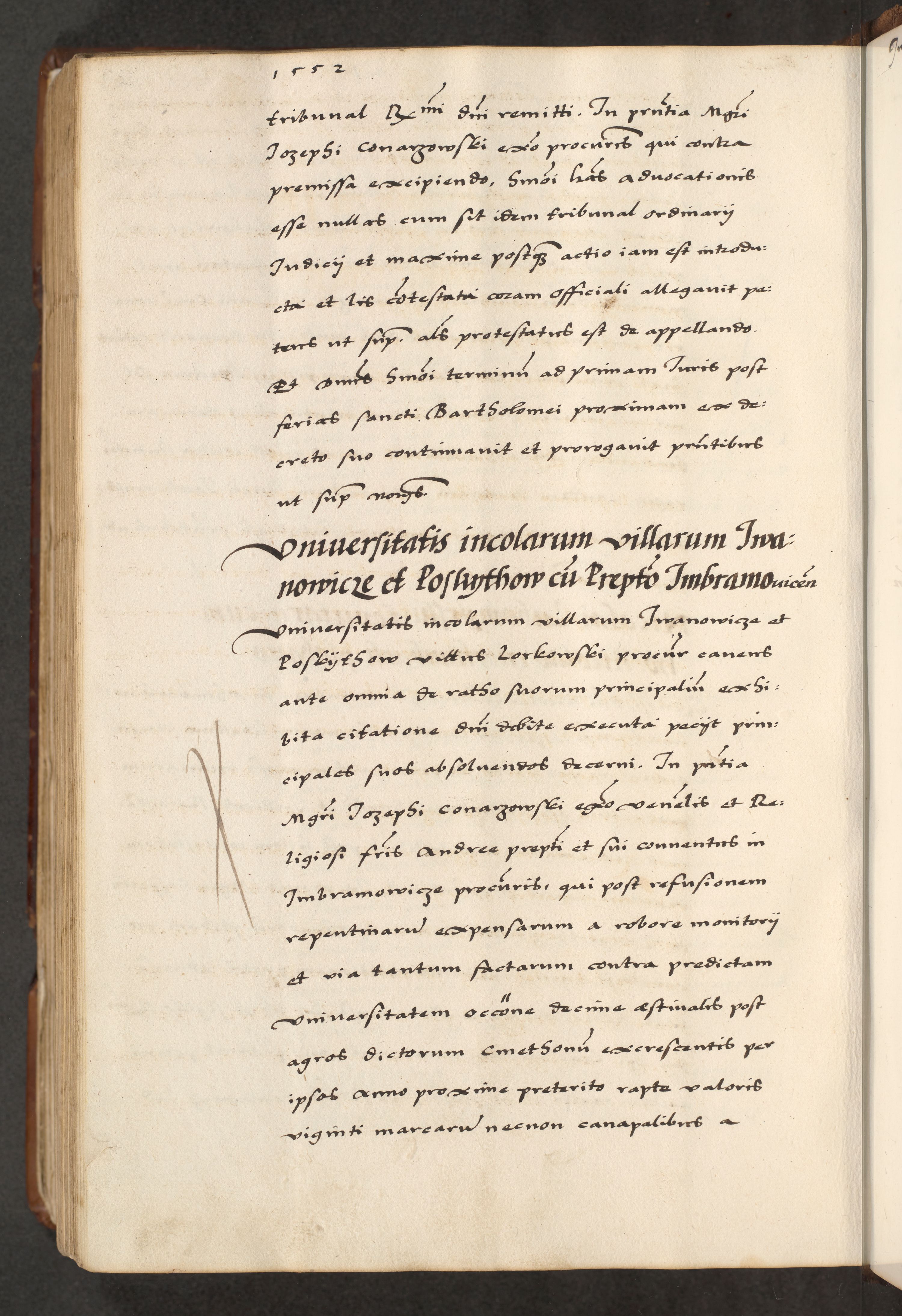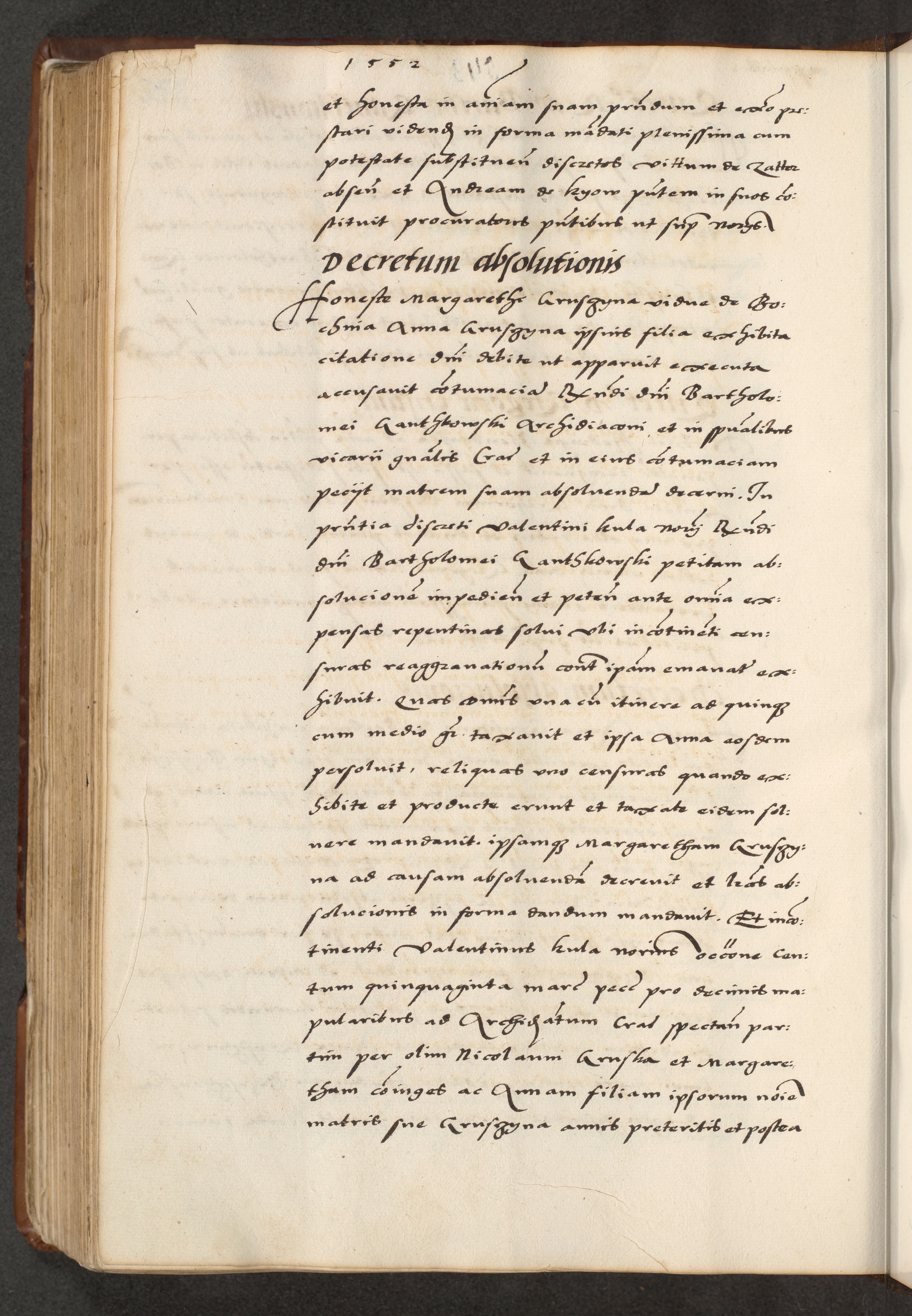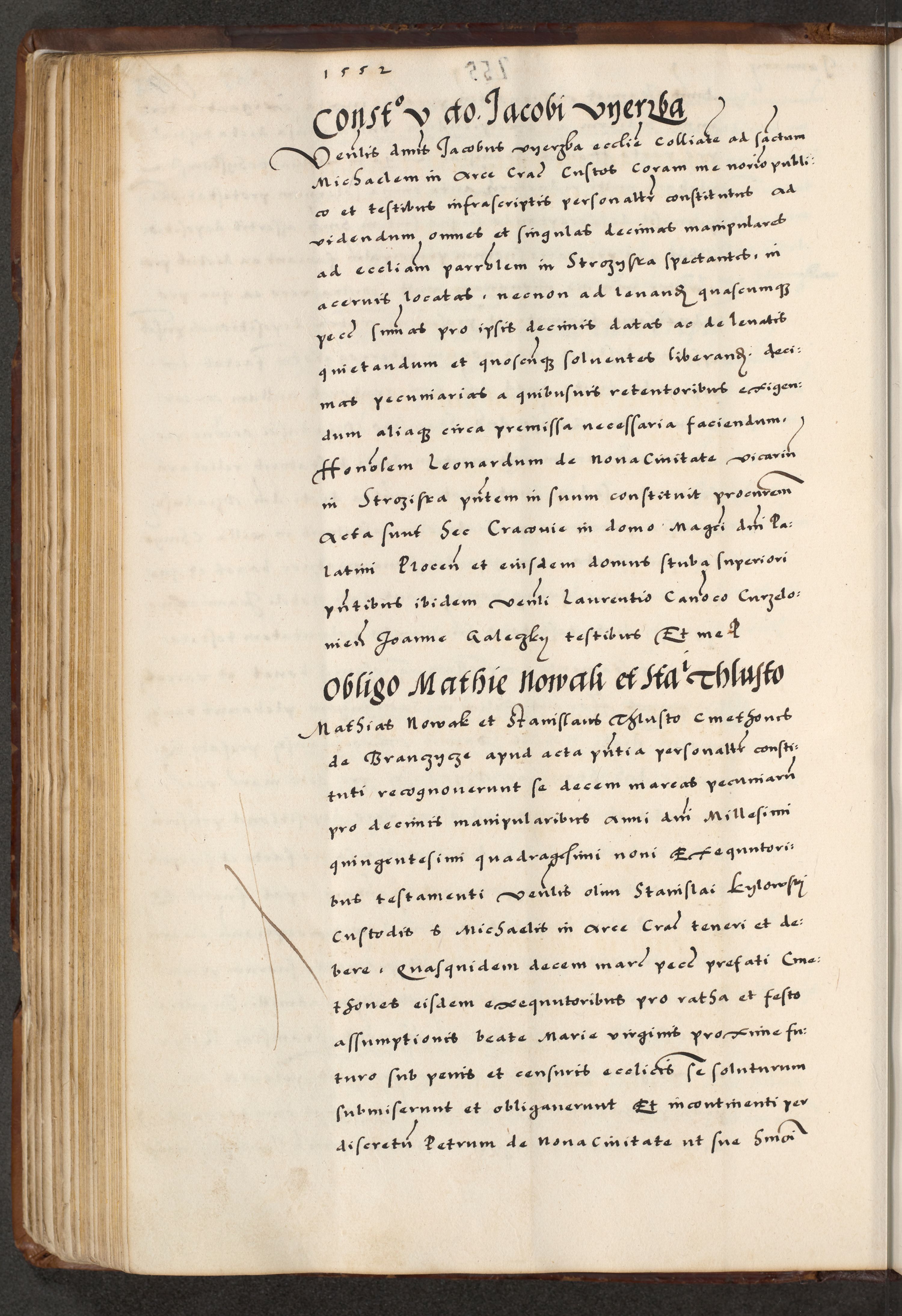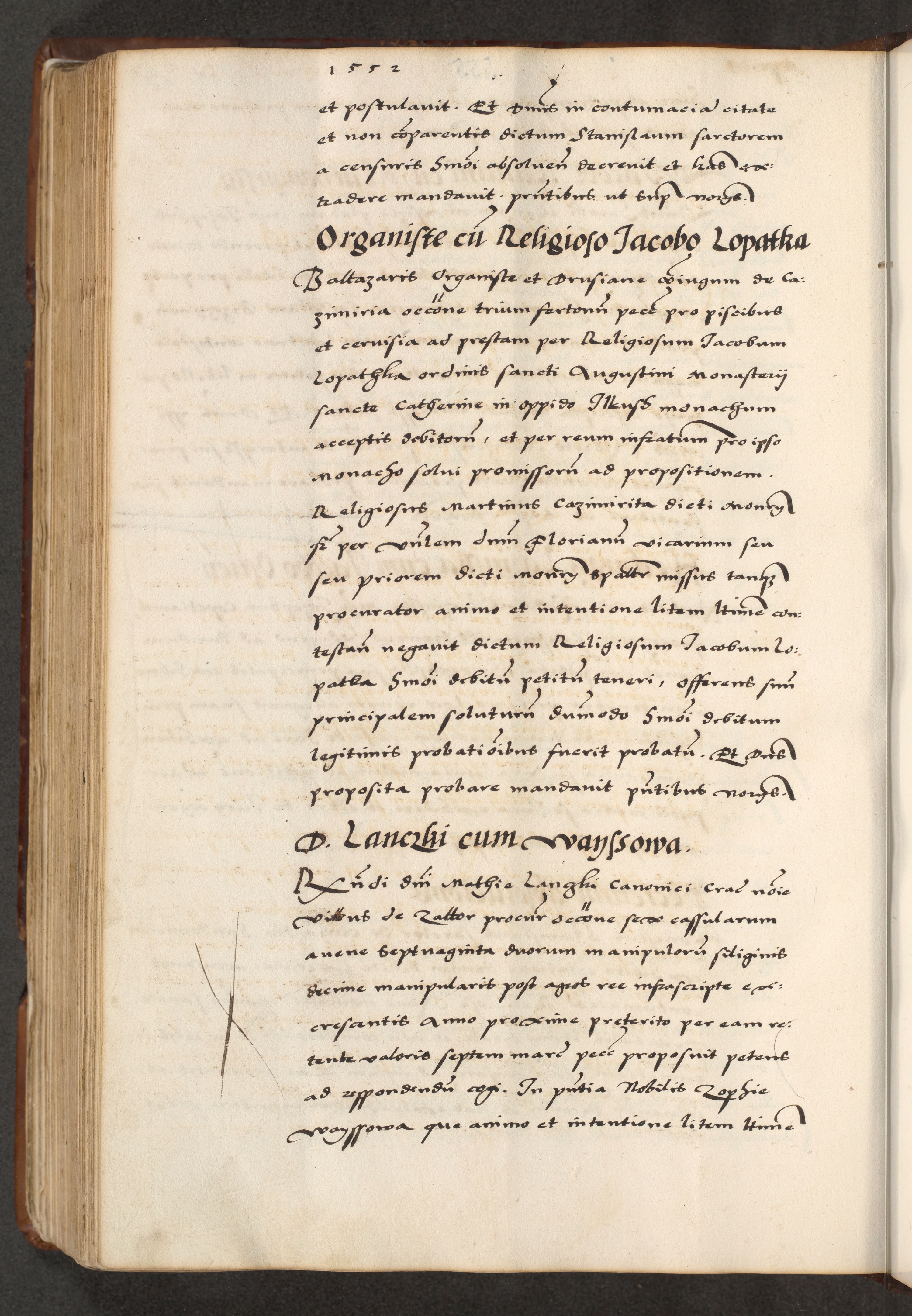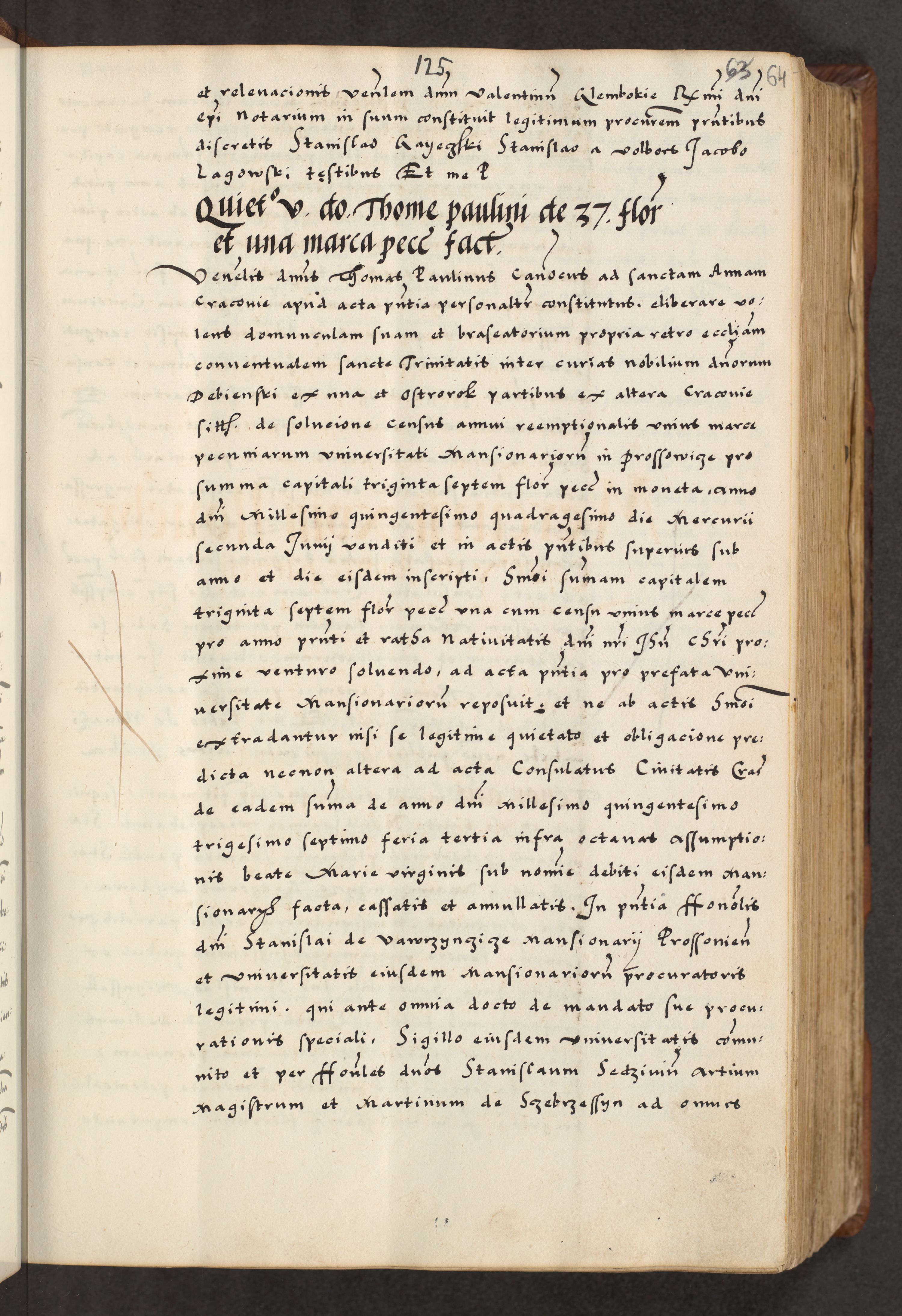 [A]cta actorum causarum, sententiarum tam diffinitivarum quam interloquutoriarum, obligationum, constitutionum et contractuum coram reverendo patre domino Petro Porembski preposito Osvieczimensi, canonico et officiali generali Cracoviensi de anno Domini millesimo quingentesimo quinguagesimo primo, cuius indictio est nona, pontificatus sanctissimi in Christo patris et domini nostri domini Juliii divina providencia pape tercii, anno secundo, a die et mense infrascriptis feliciter continiantur