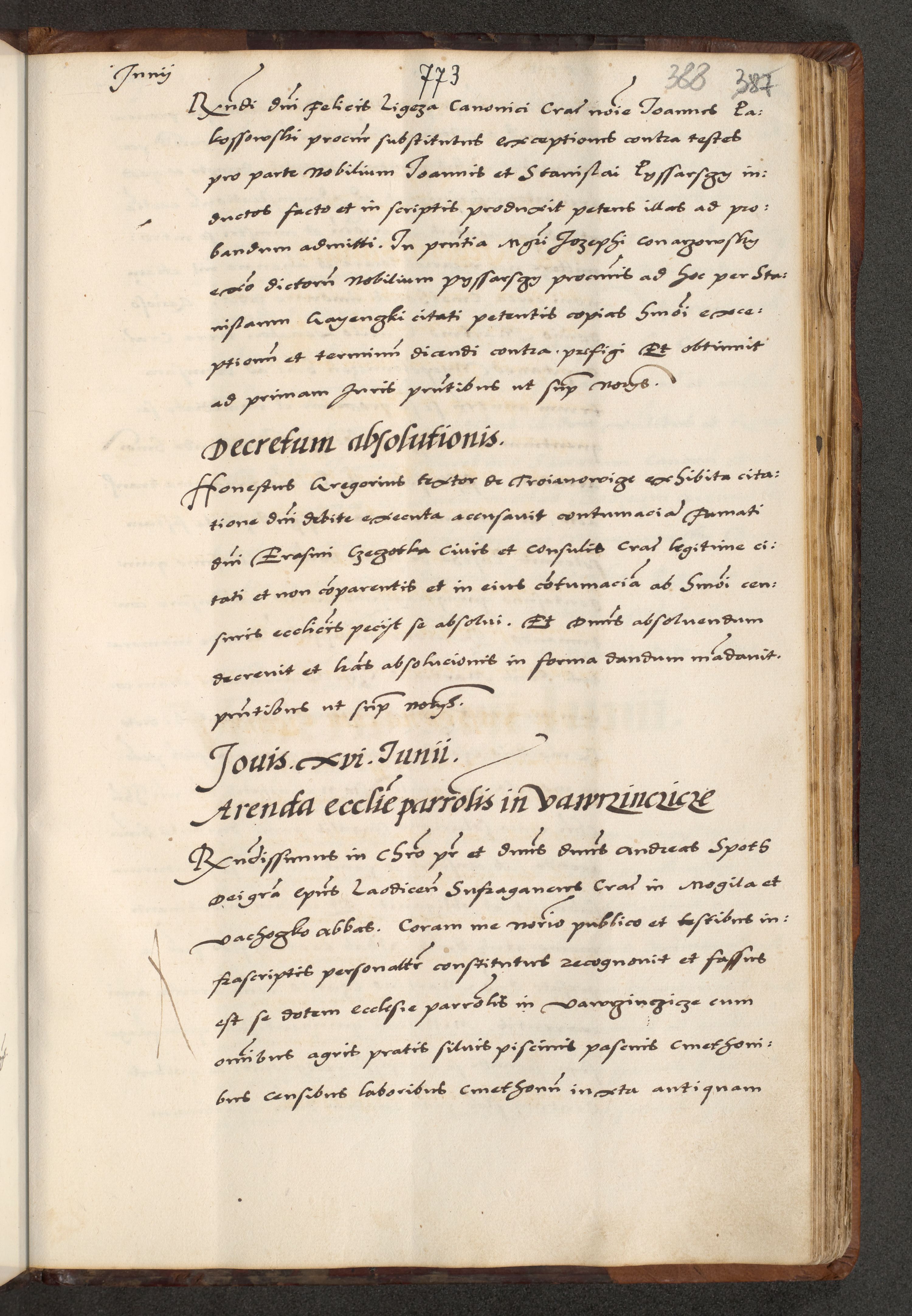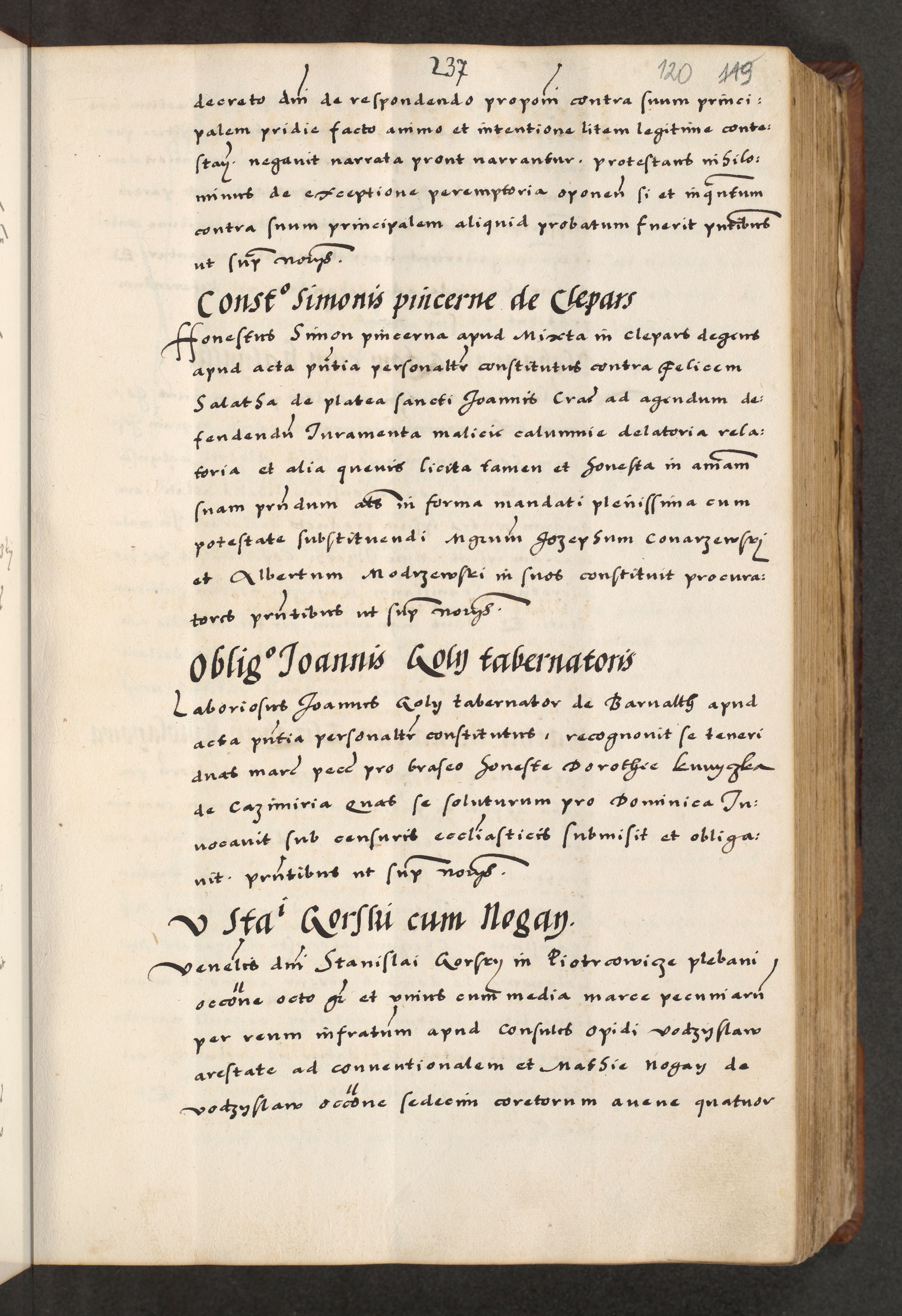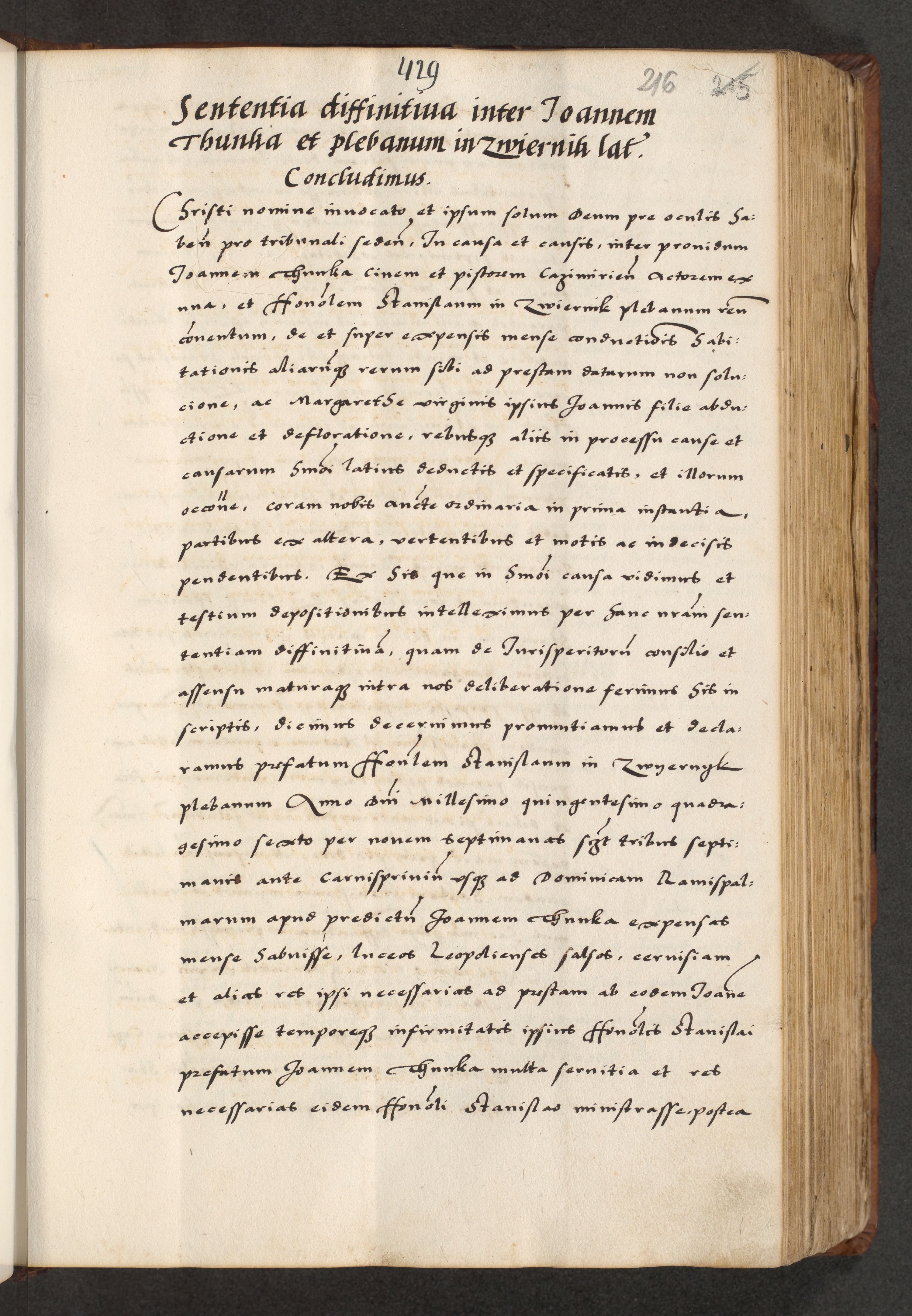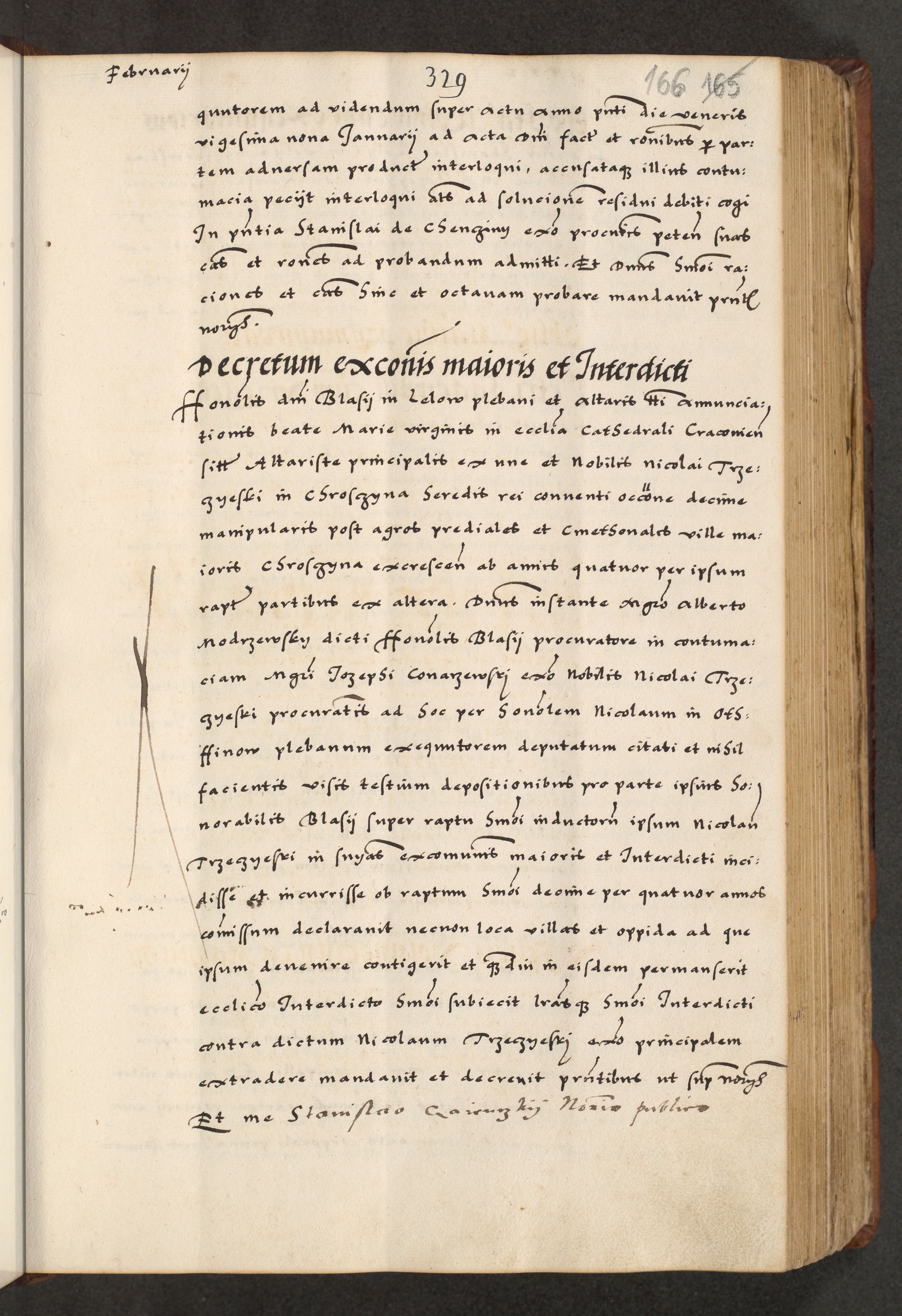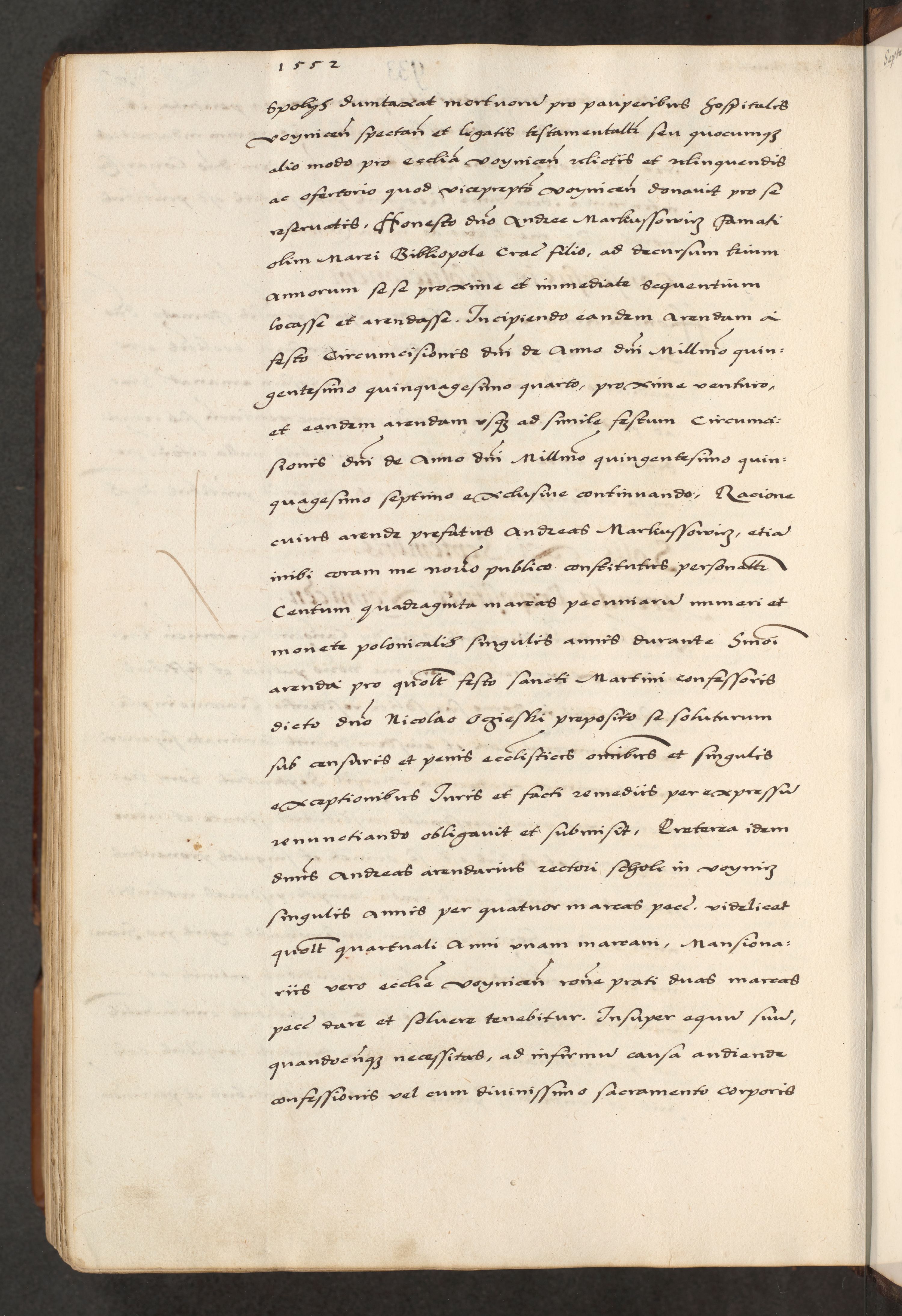 [A]cta actorum causarum, sententiarum tam diffinitivarum quam interloquutoriarum, obligationum, constitutionum et contractuum coram reverendo patre domino Petro Porembski preposito Osvieczimensi, canonico et officiali generali Cracoviensi de anno Domini millesimo quingentesimo quinguagesimo primo, cuius indictio est nona, pontificatus sanctissimi in Christo patris et domini nostri domini Juliii divina providencia pape tercii, anno secundo, a die et mense infrascriptis feliciter continiantur