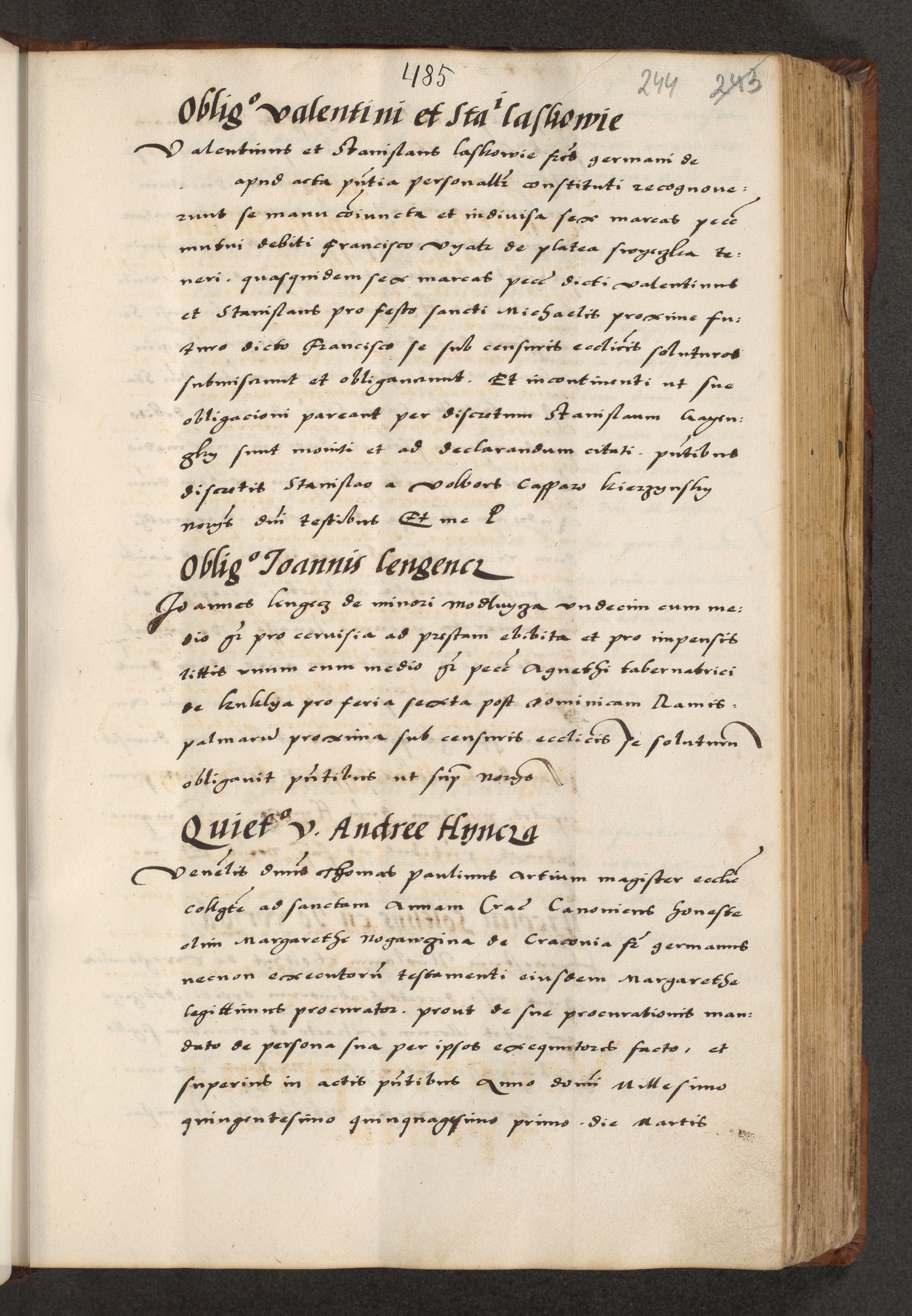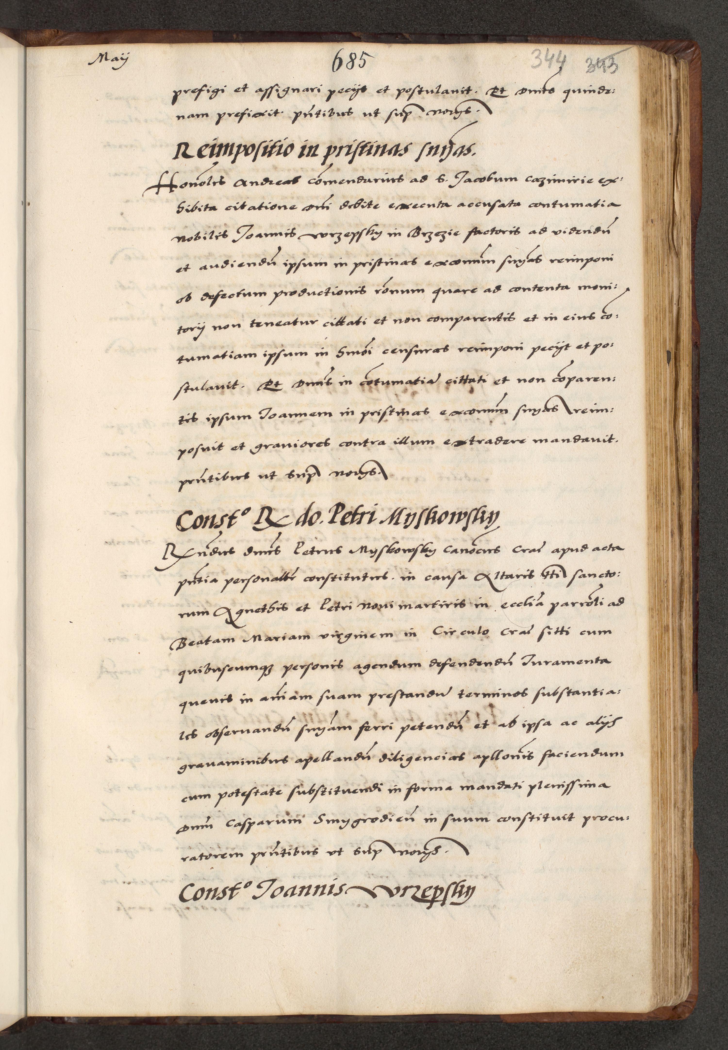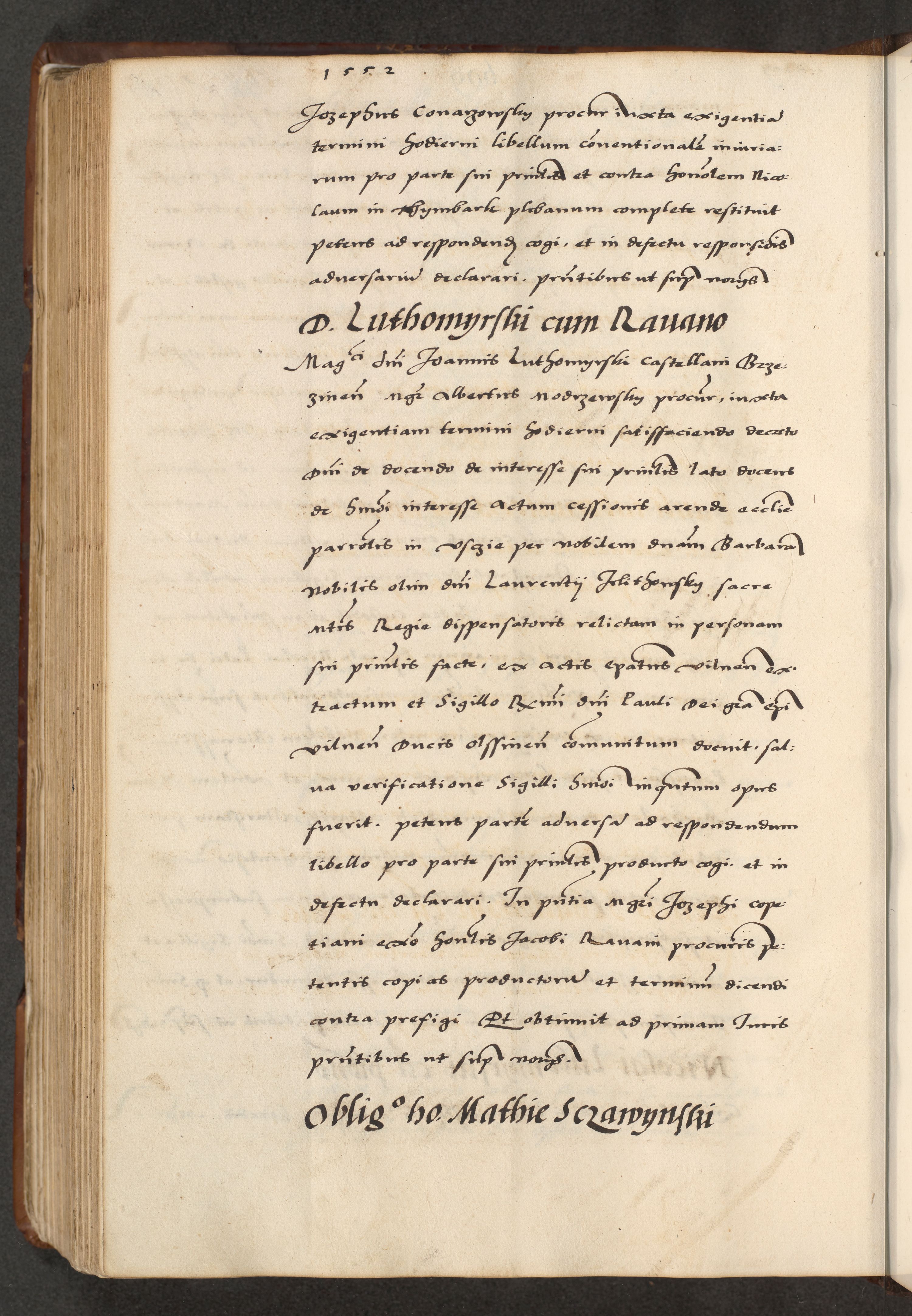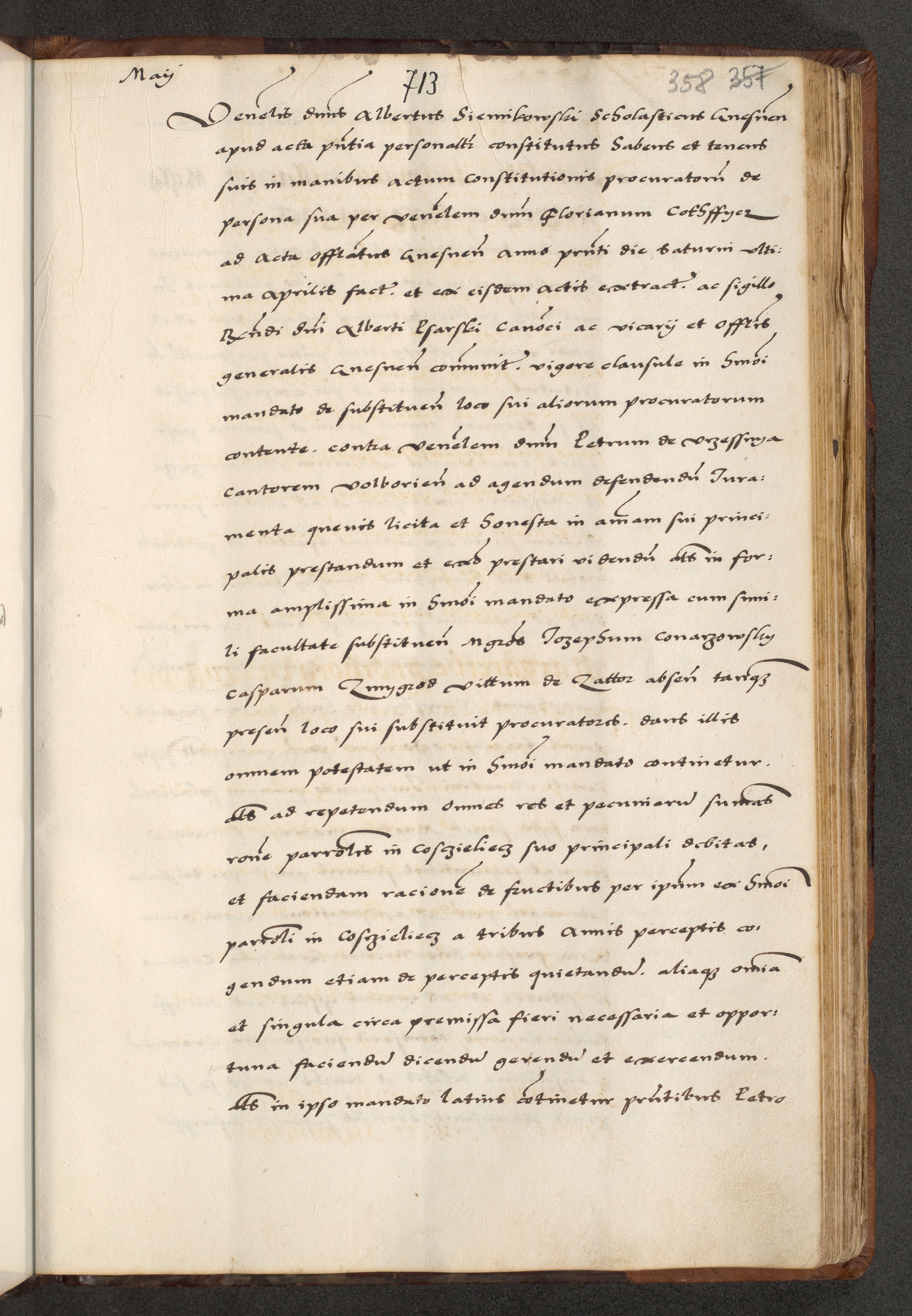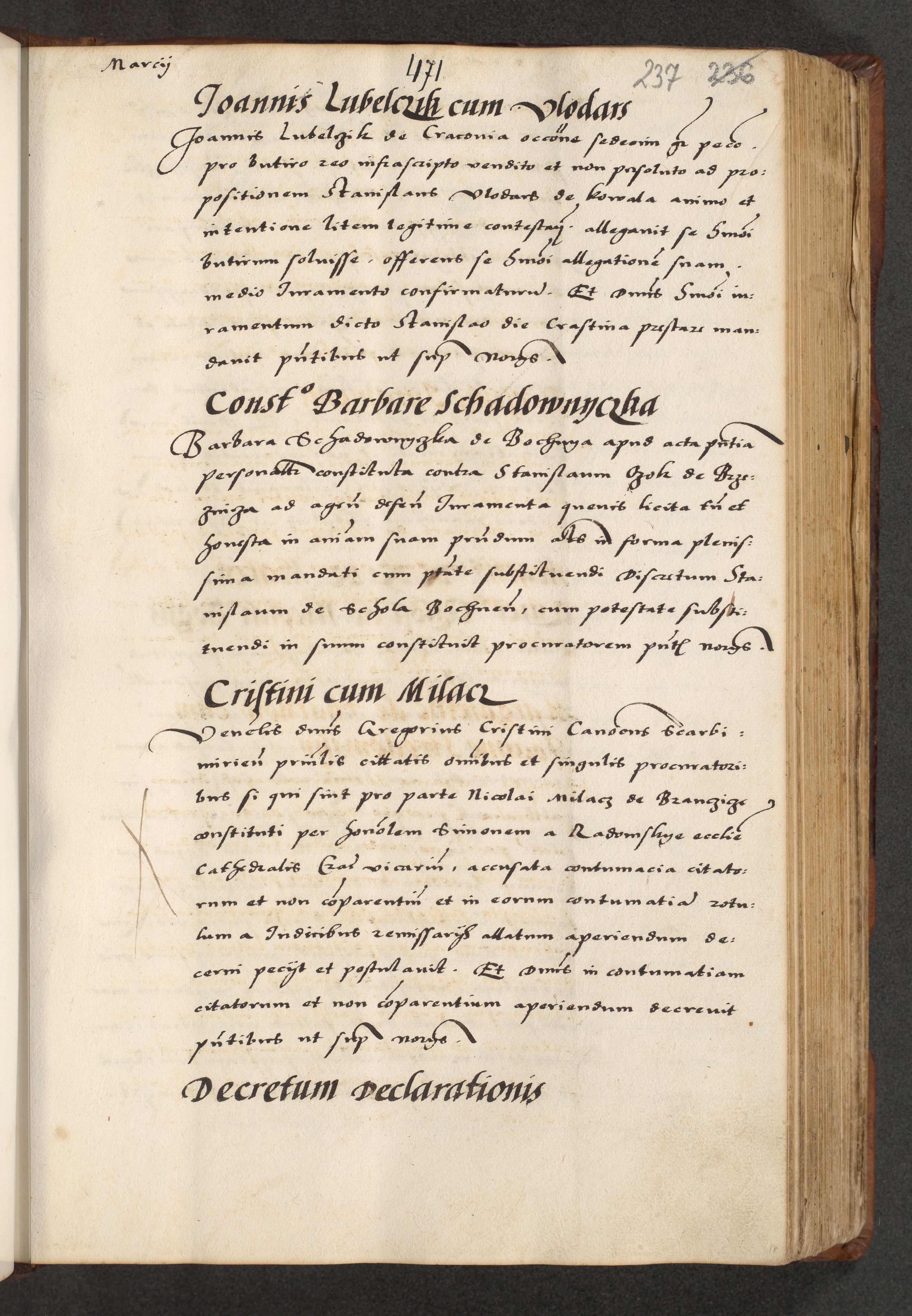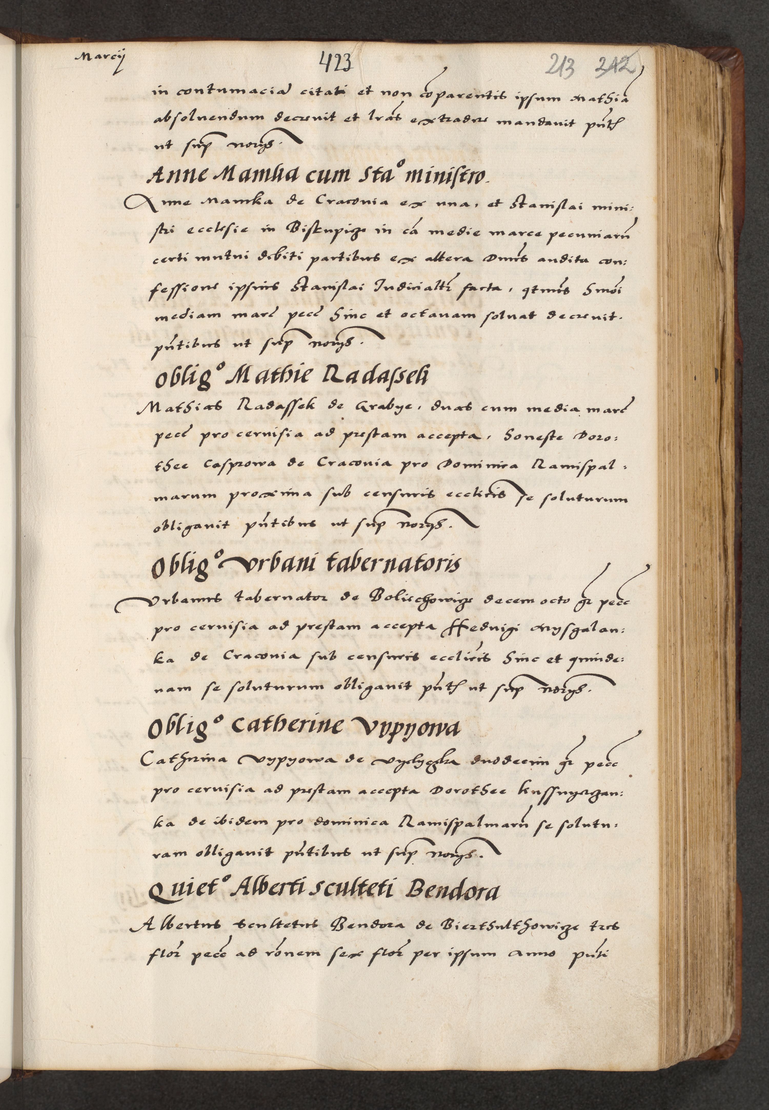 [A]cta actorum causarum, sententiarum tam diffinitivarum quam interloquutoriarum, obligationum, constitutionum et contractuum coram reverendo patre domino Petro Porembski preposito Osvieczimensi, canonico et officiali generali Cracoviensi de anno Domini millesimo quingentesimo quinguagesimo primo, cuius indictio est nona, pontificatus sanctissimi in Christo patris et domini nostri domini Juliii divina providencia pape tercii, anno secundo, a die et mense infrascriptis feliciter continiantur