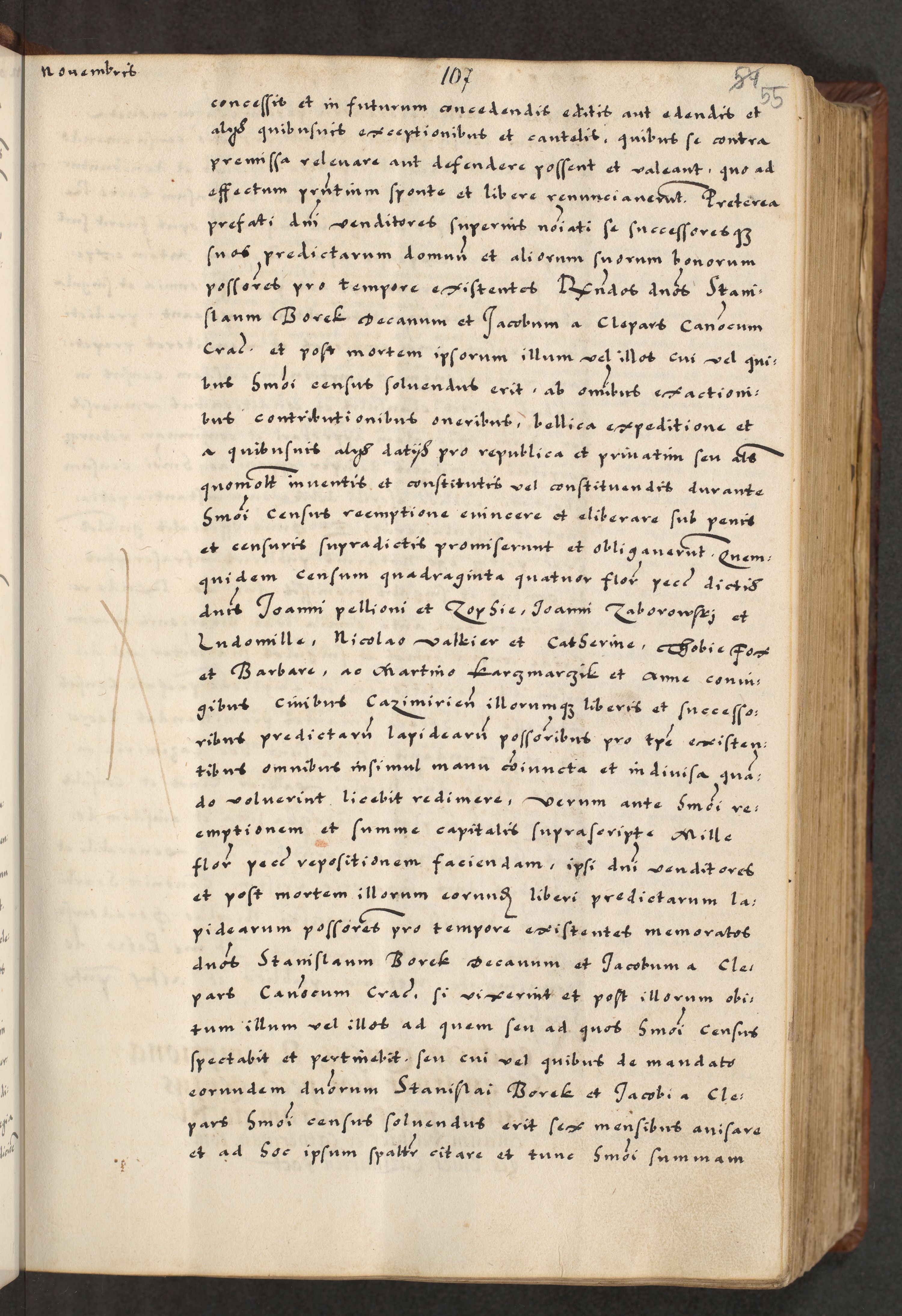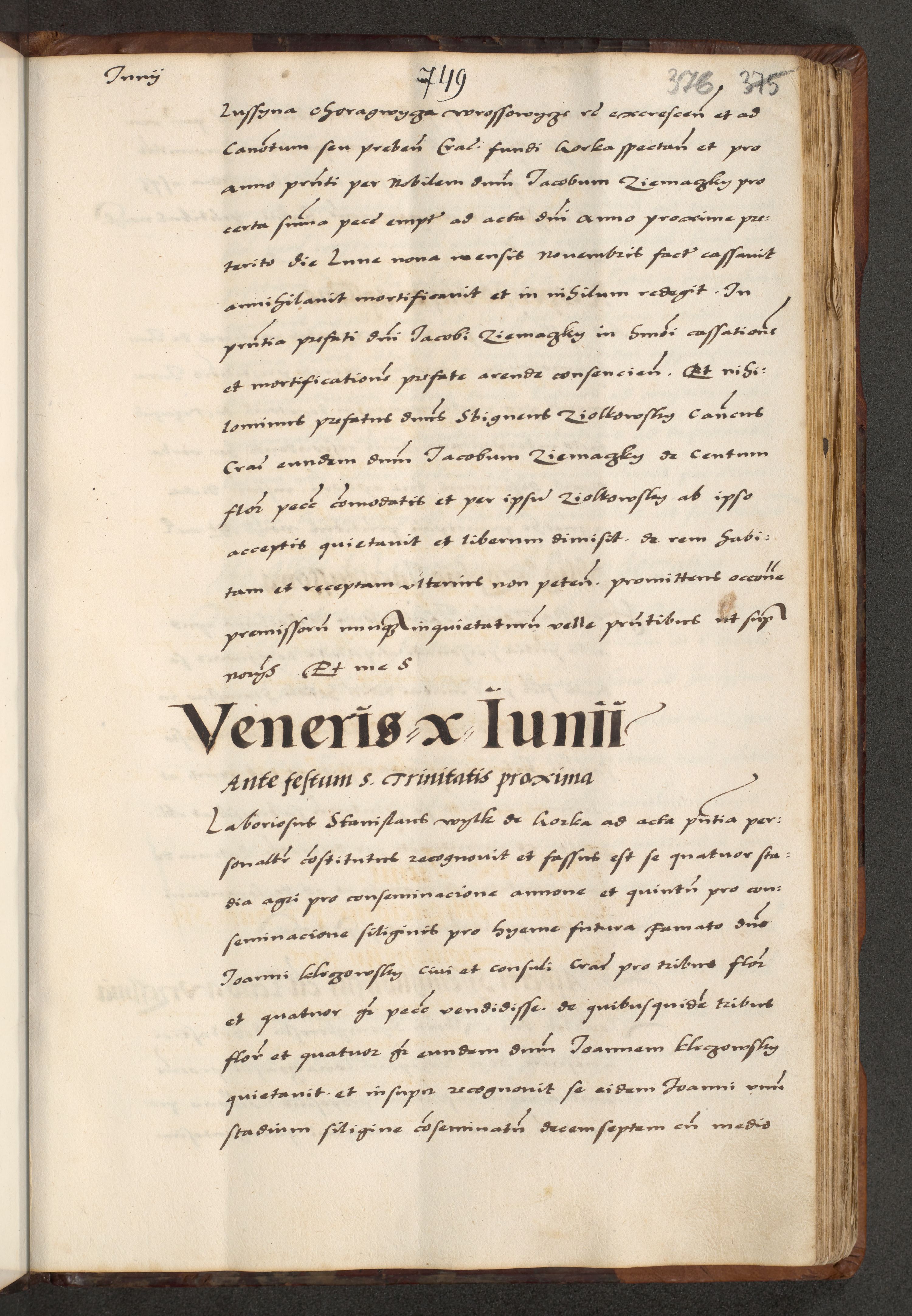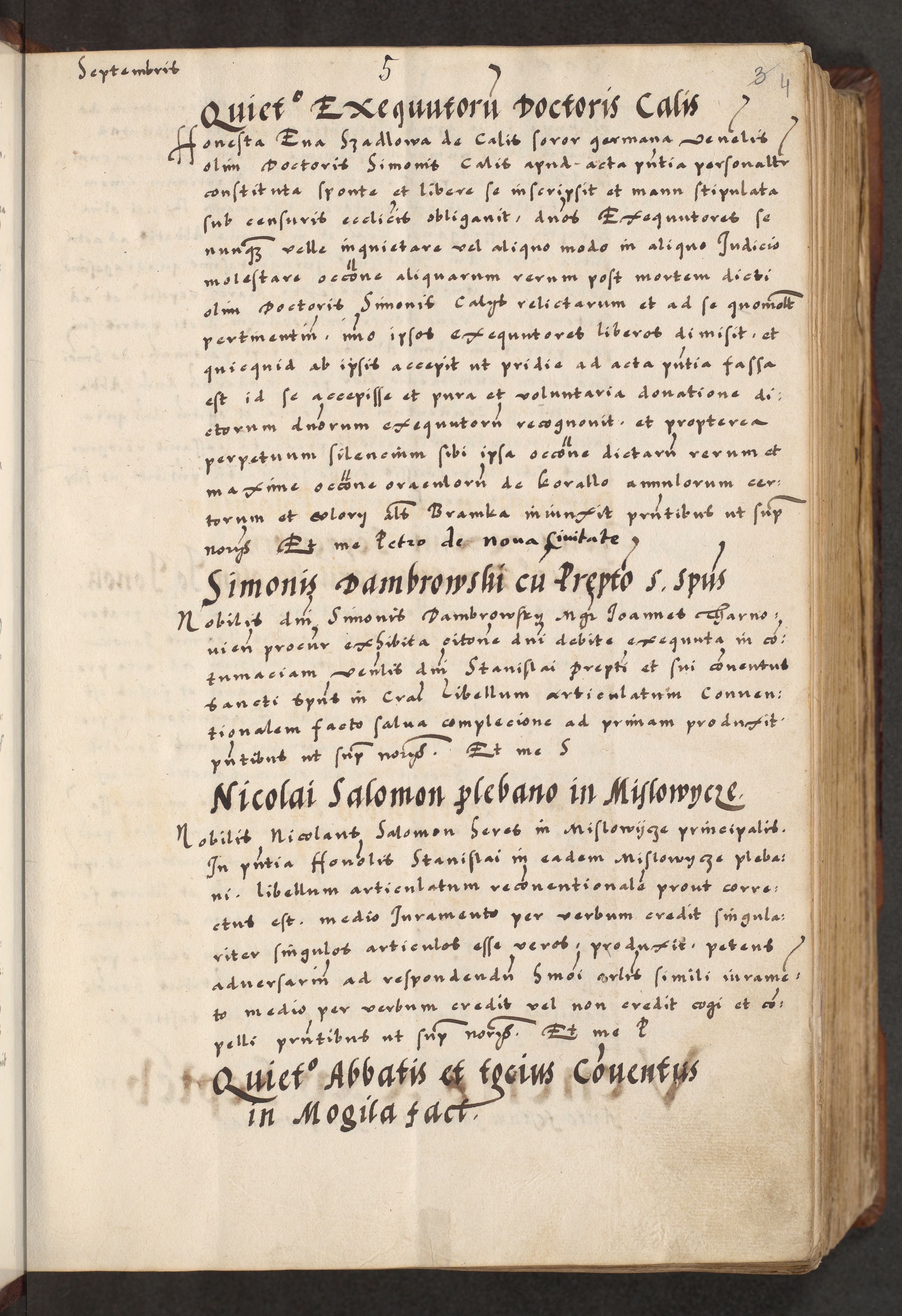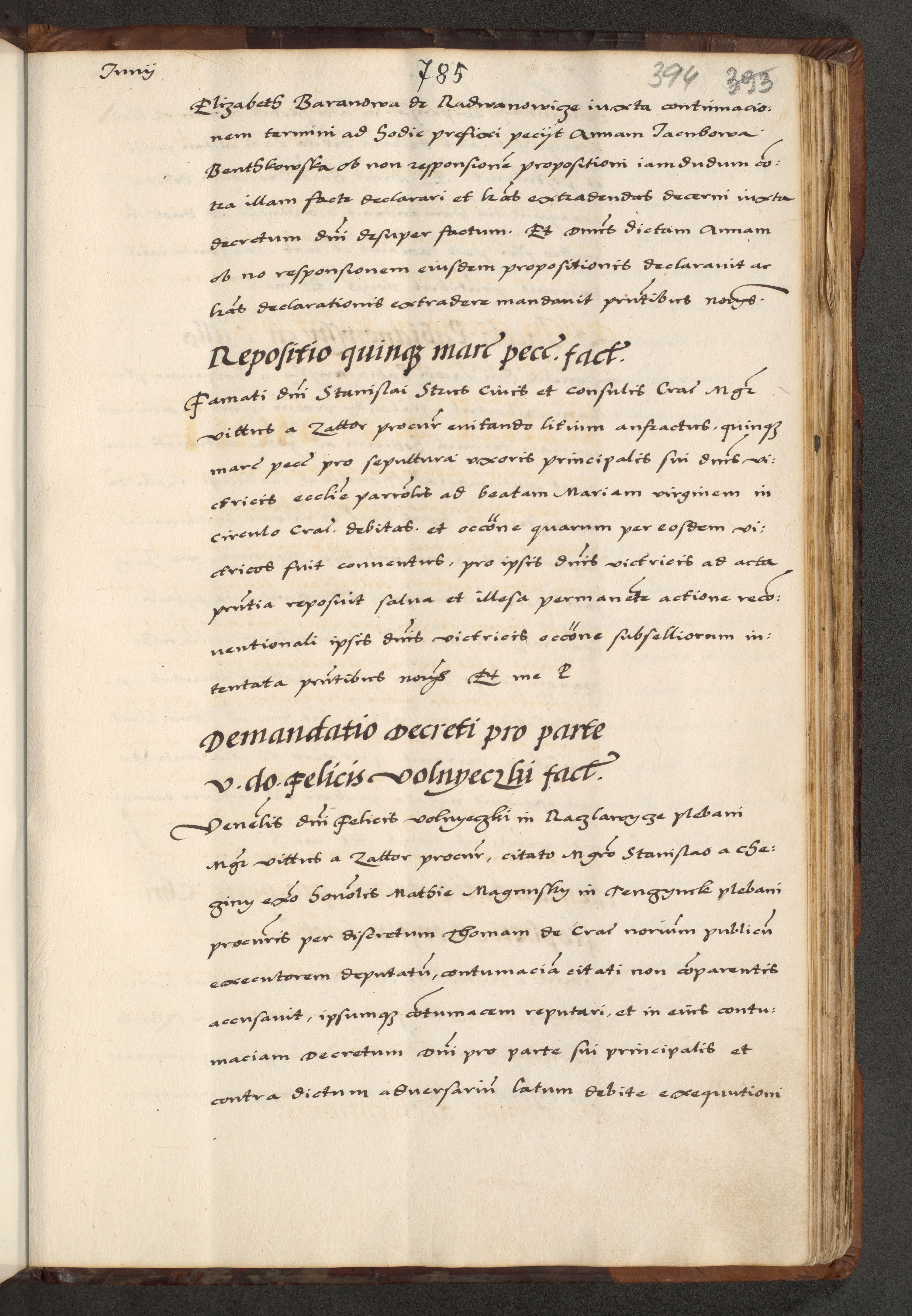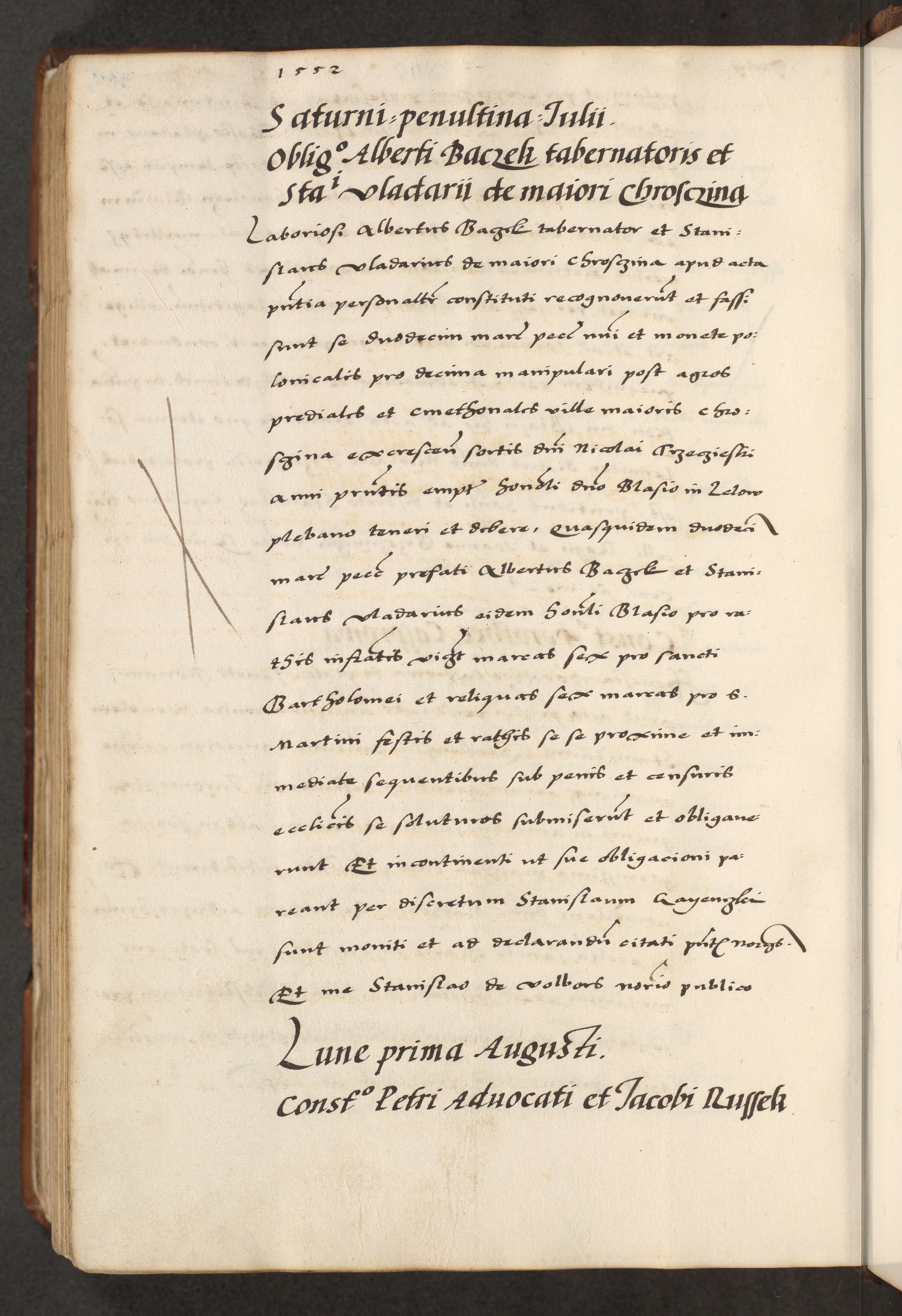 [A]cta actorum causarum, sententiarum tam diffinitivarum quam interloquutoriarum, obligationum, constitutionum et contractuum coram reverendo patre domino Petro Porembski preposito Osvieczimensi, canonico et officiali generali Cracoviensi de anno Domini millesimo quingentesimo quinguagesimo primo, cuius indictio est nona, pontificatus sanctissimi in Christo patris et domini nostri domini Juliii divina providencia pape tercii, anno secundo, a die et mense infrascriptis feliciter continiantur