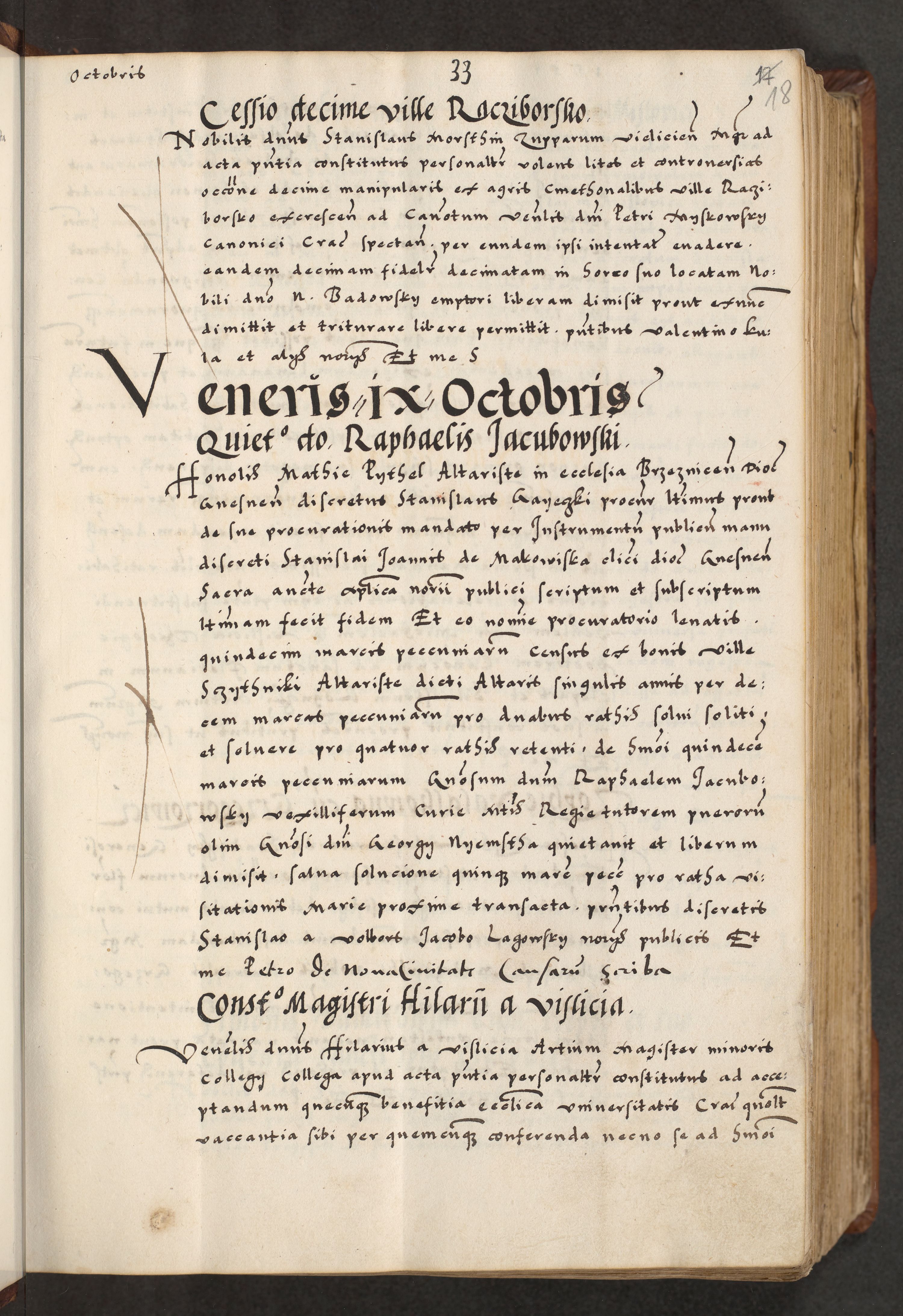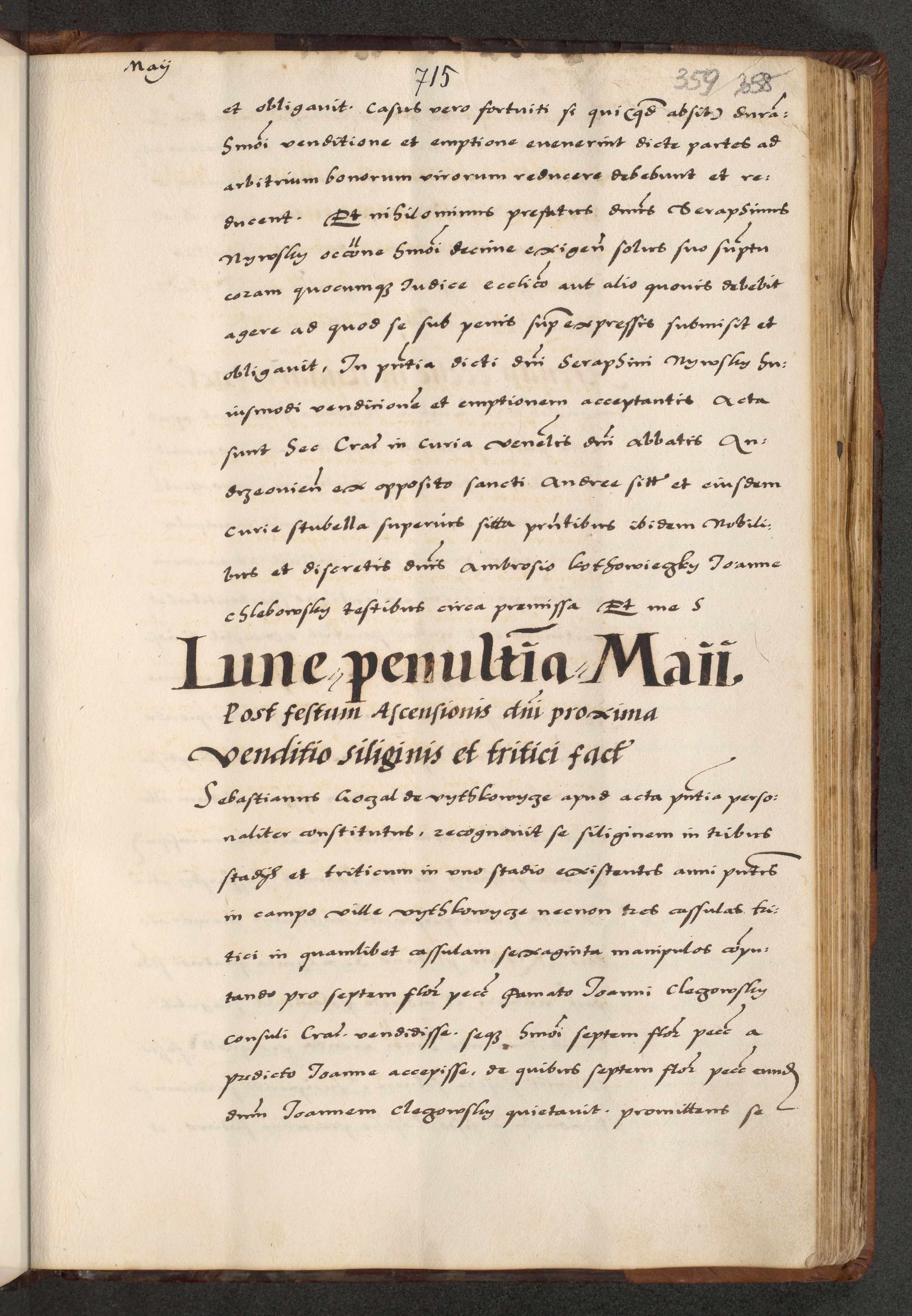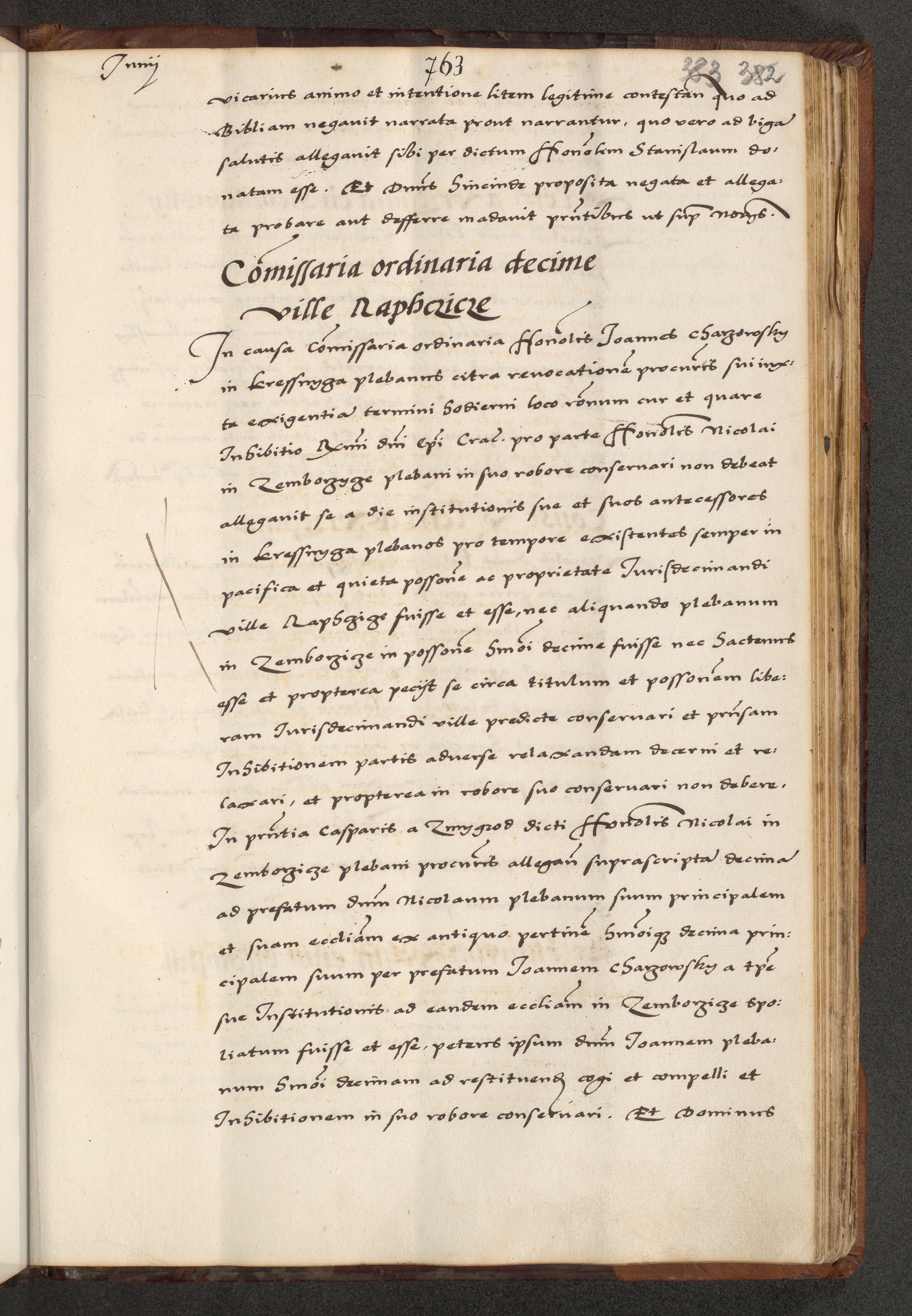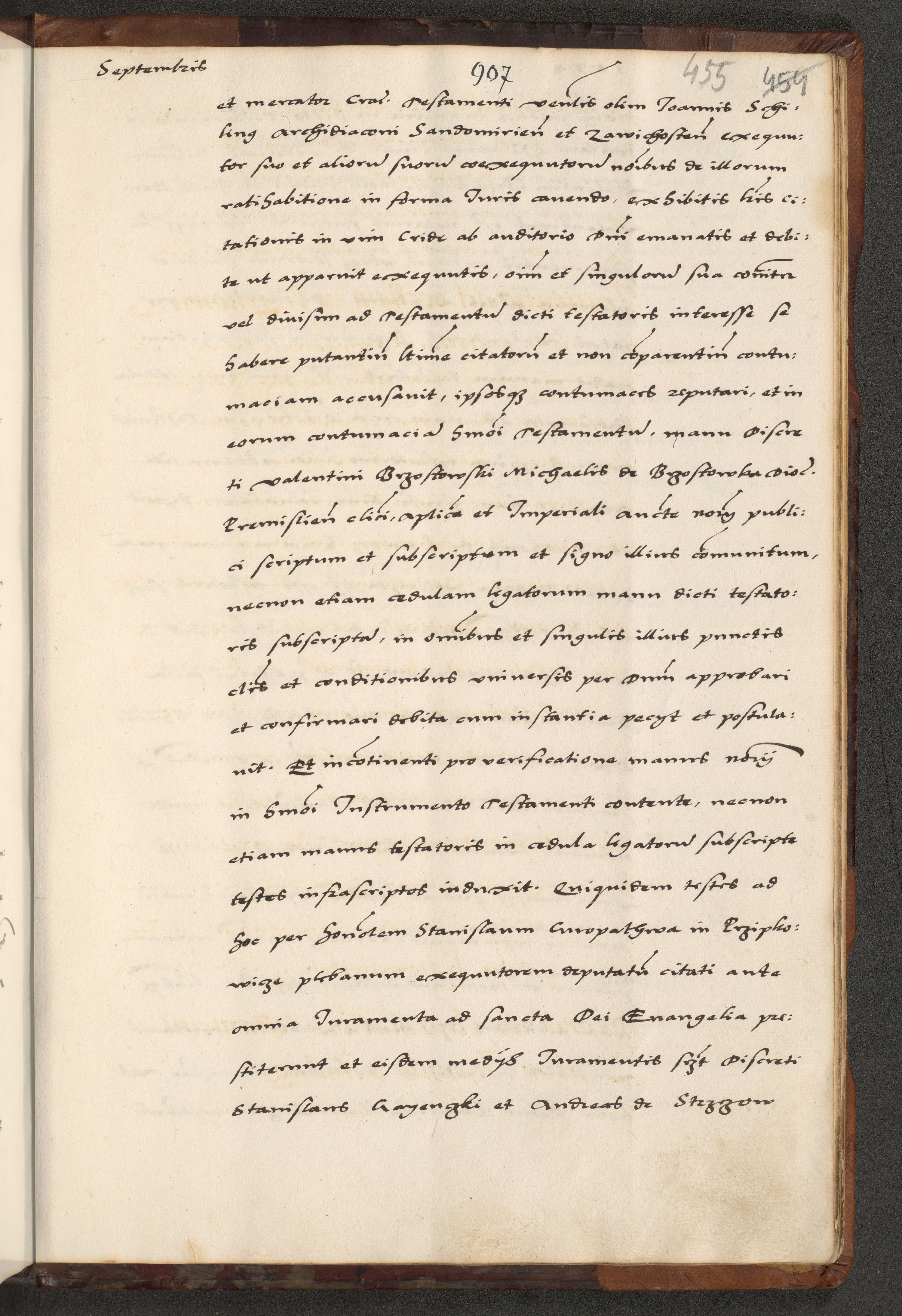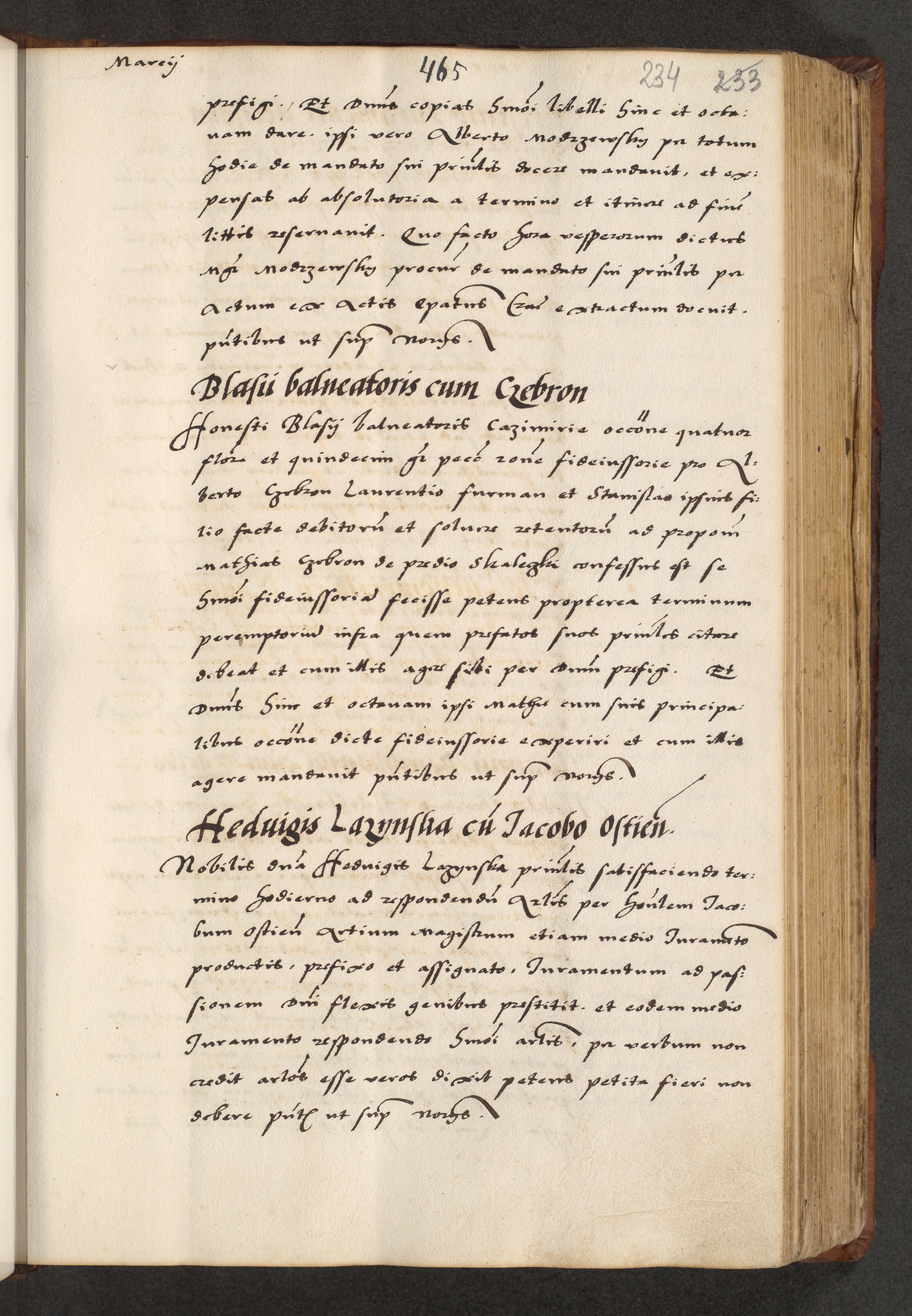 [A]cta actorum causarum, sententiarum tam diffinitivarum quam interloquutoriarum, obligationum, constitutionum et contractuum coram reverendo patre domino Petro Porembski preposito Osvieczimensi, canonico et officiali generali Cracoviensi de anno Domini millesimo quingentesimo quinguagesimo primo, cuius indictio est nona, pontificatus sanctissimi in Christo patris et domini nostri domini Juliii divina providencia pape tercii, anno secundo, a die et mense infrascriptis feliciter continiantur