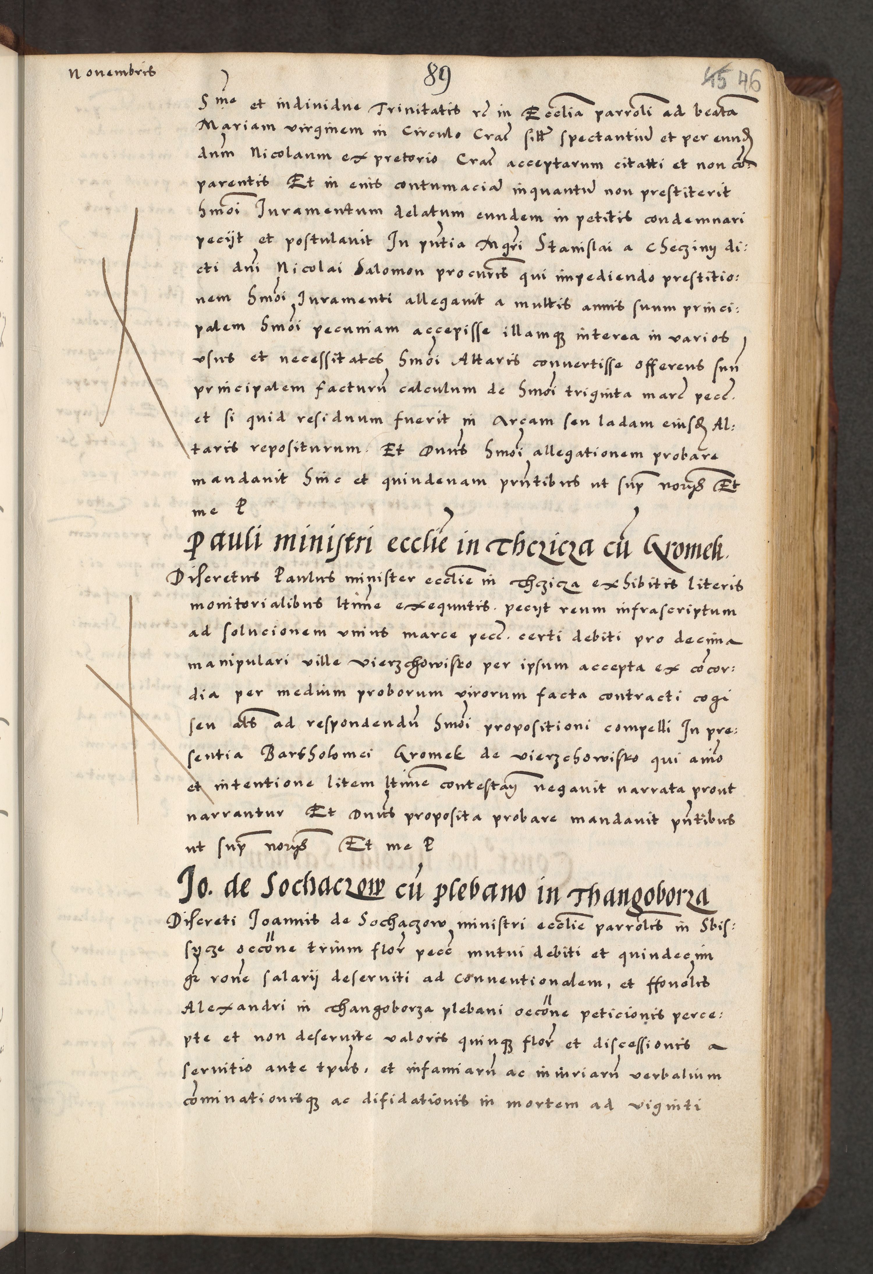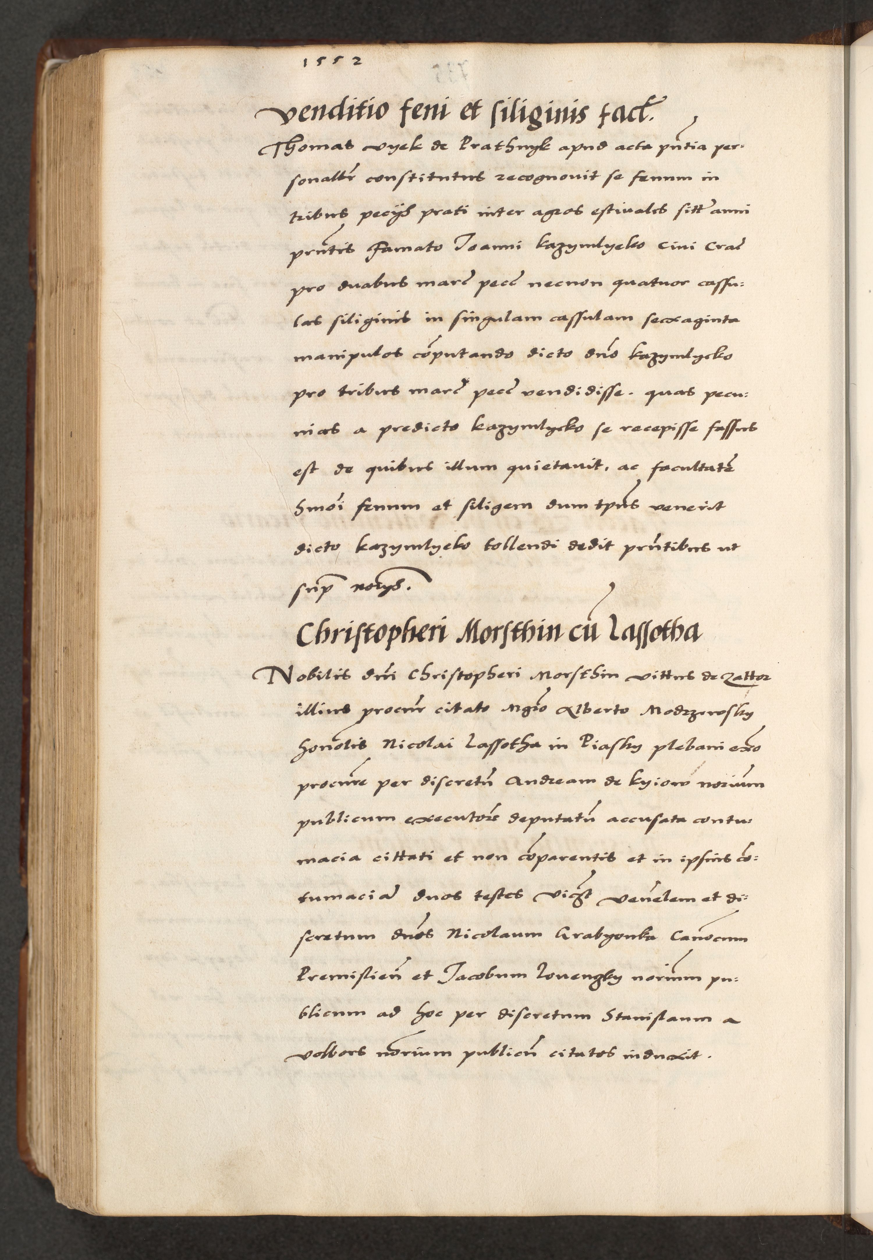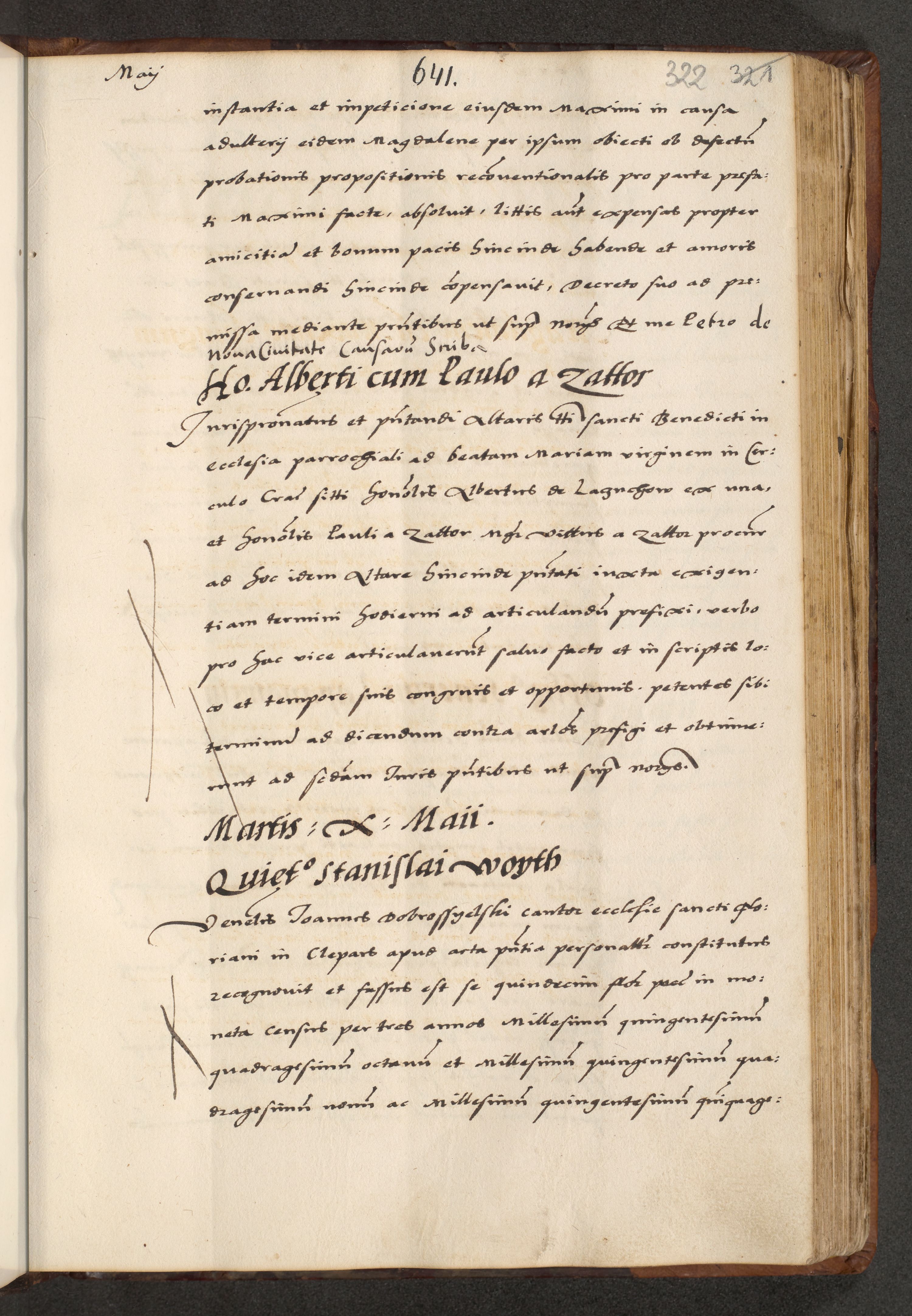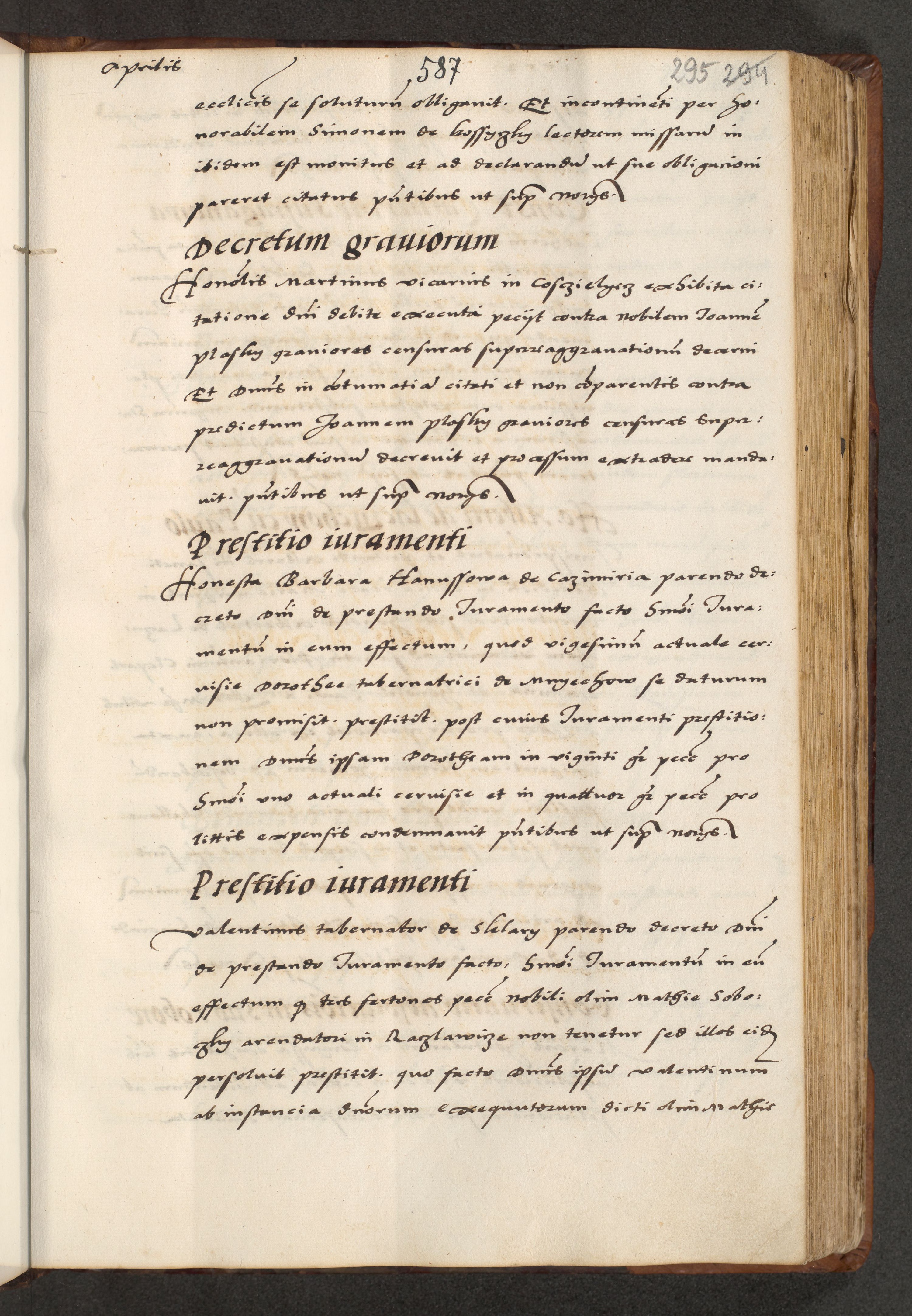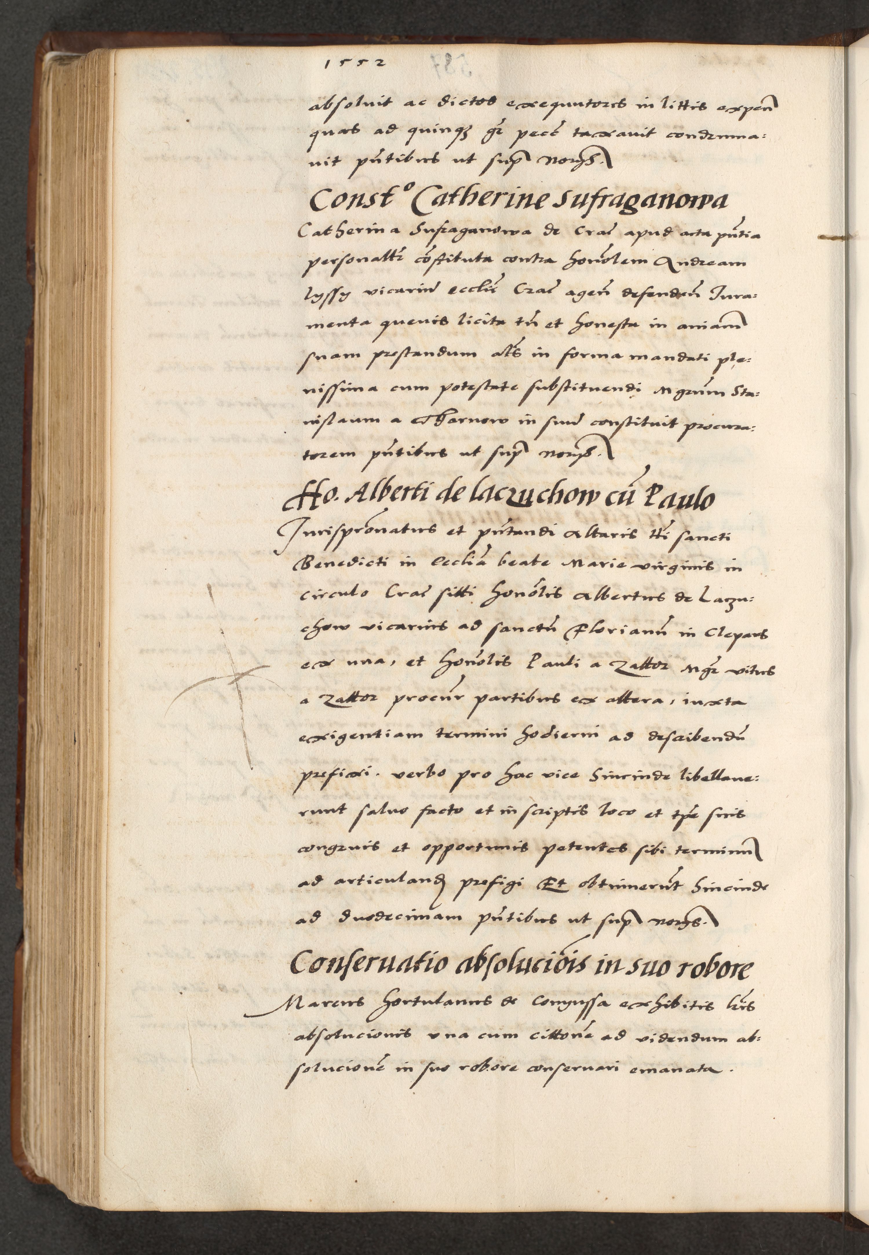 [A]cta actorum causarum, sententiarum tam diffinitivarum quam interloquutoriarum, obligationum, constitutionum et contractuum coram reverendo patre domino Petro Porembski preposito Osvieczimensi, canonico et officiali generali Cracoviensi de anno Domini millesimo quingentesimo quinguagesimo primo, cuius indictio est nona, pontificatus sanctissimi in Christo patris et domini nostri domini Juliii divina providencia pape tercii, anno secundo, a die et mense infrascriptis feliciter continiantur