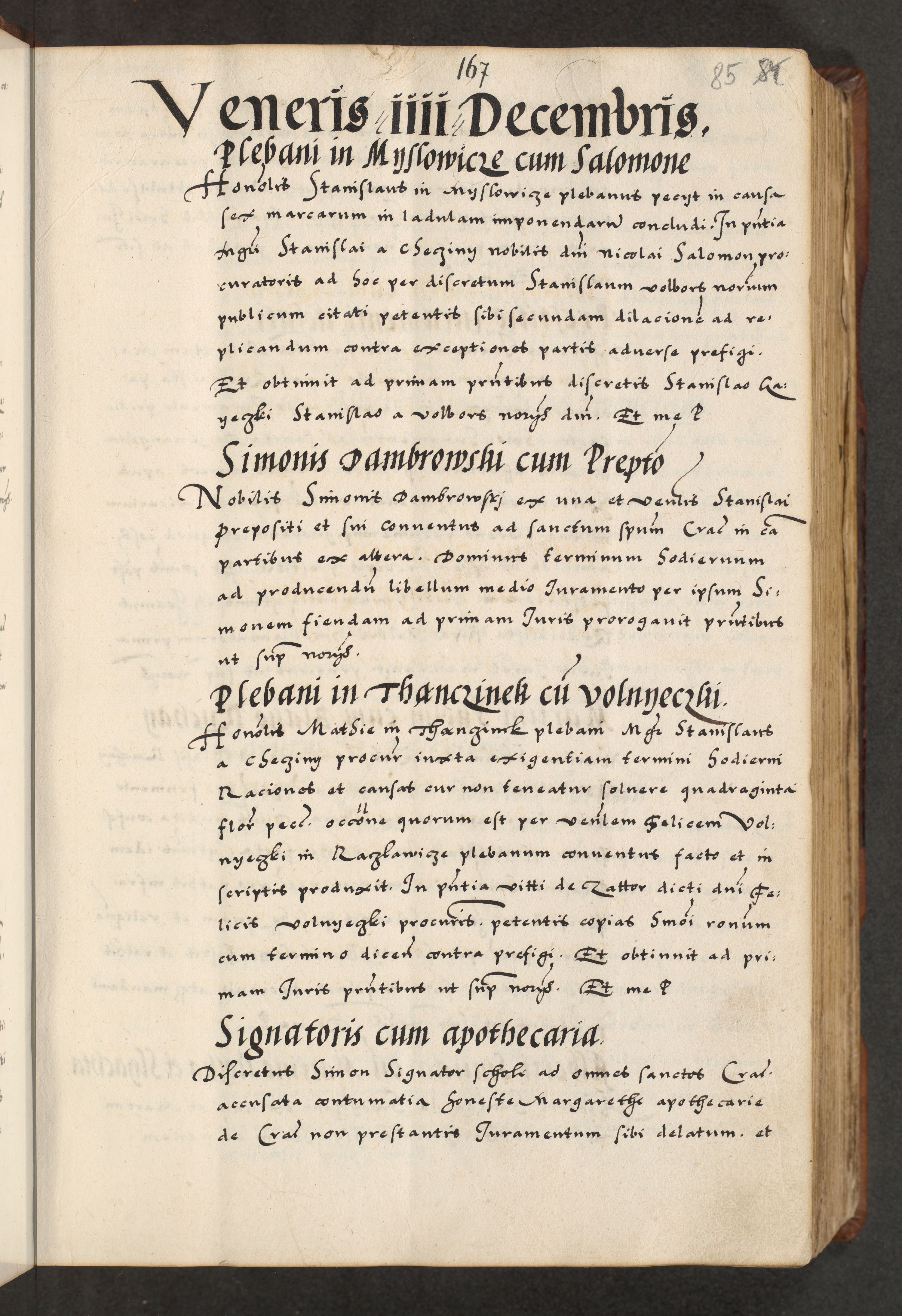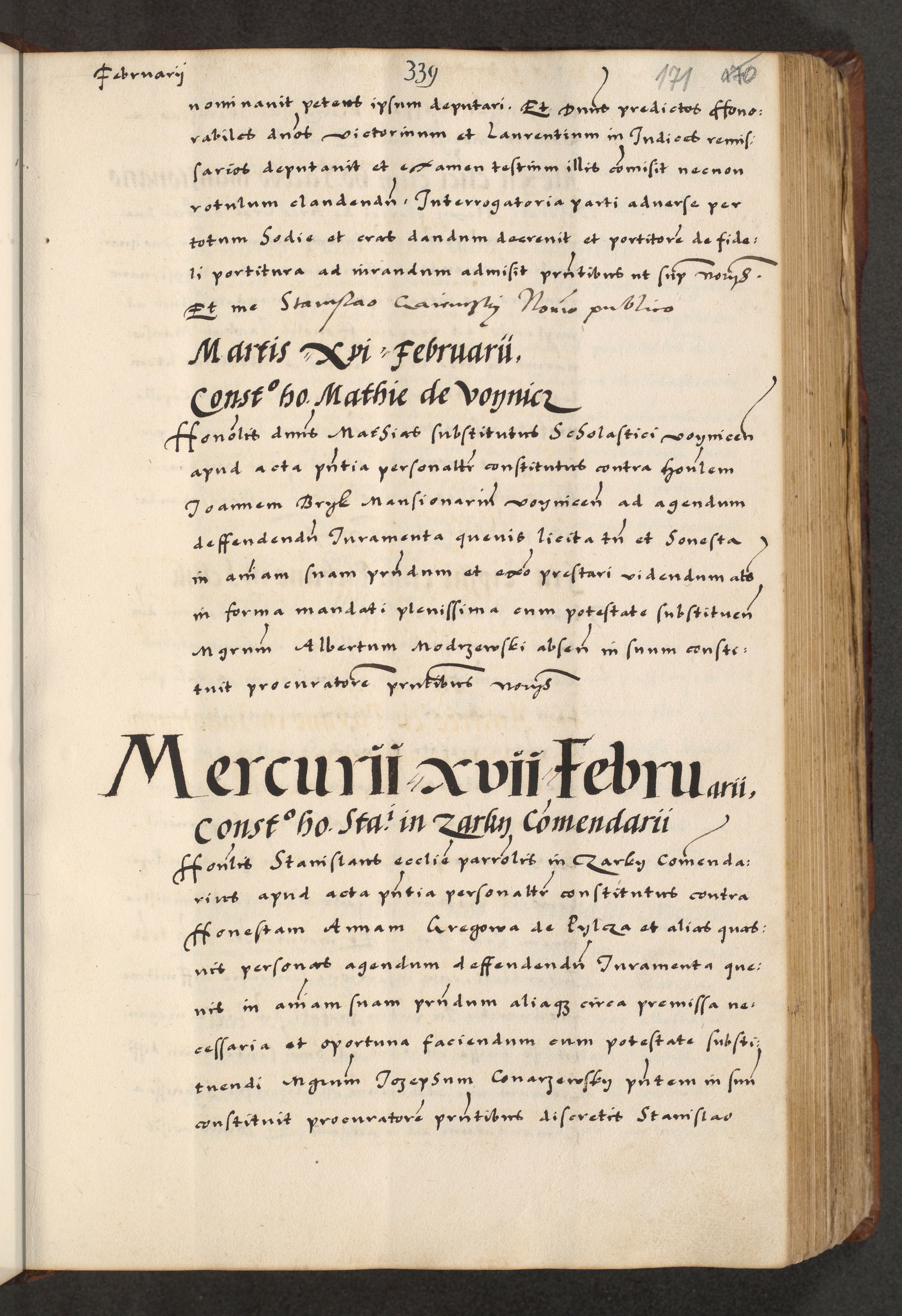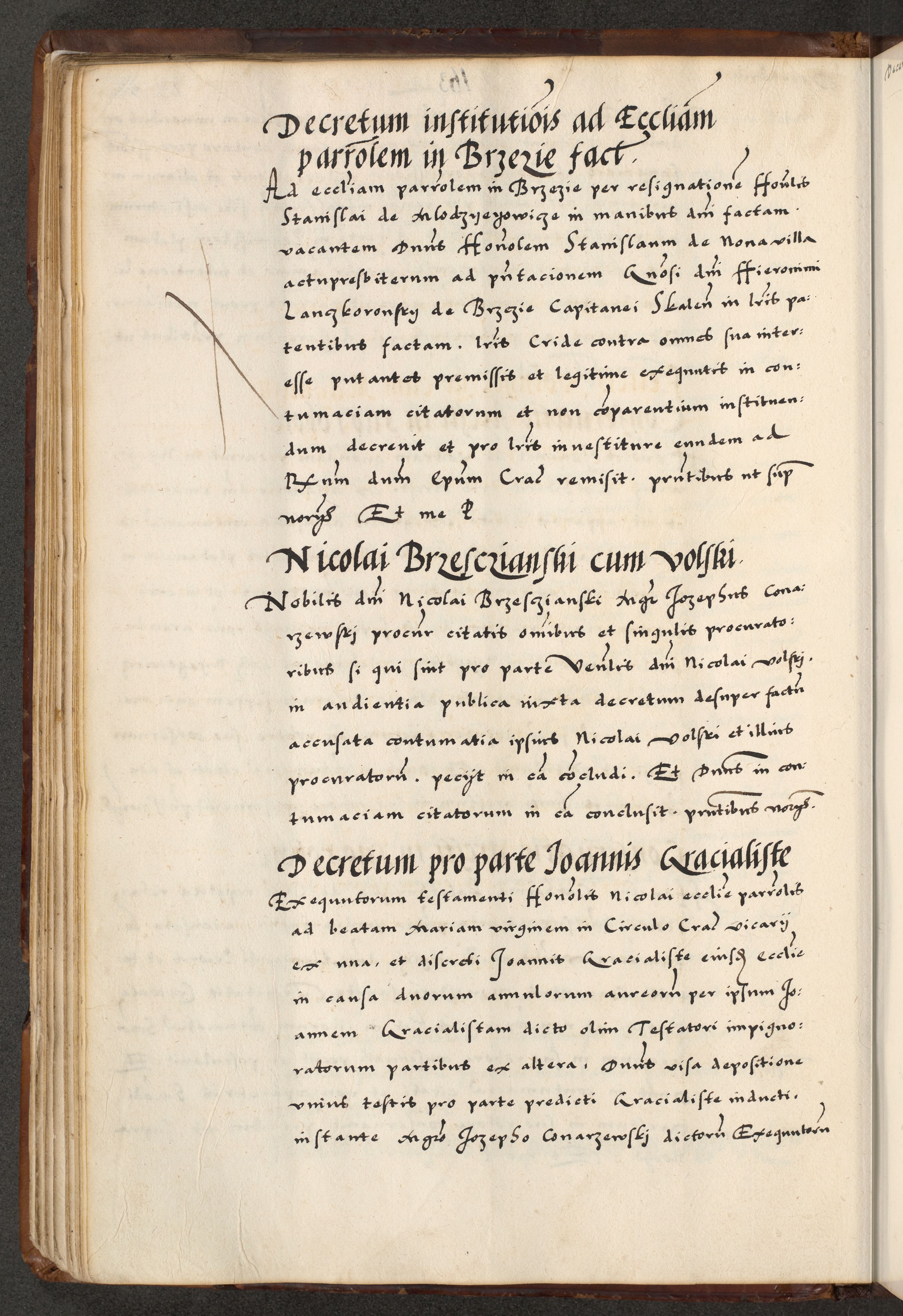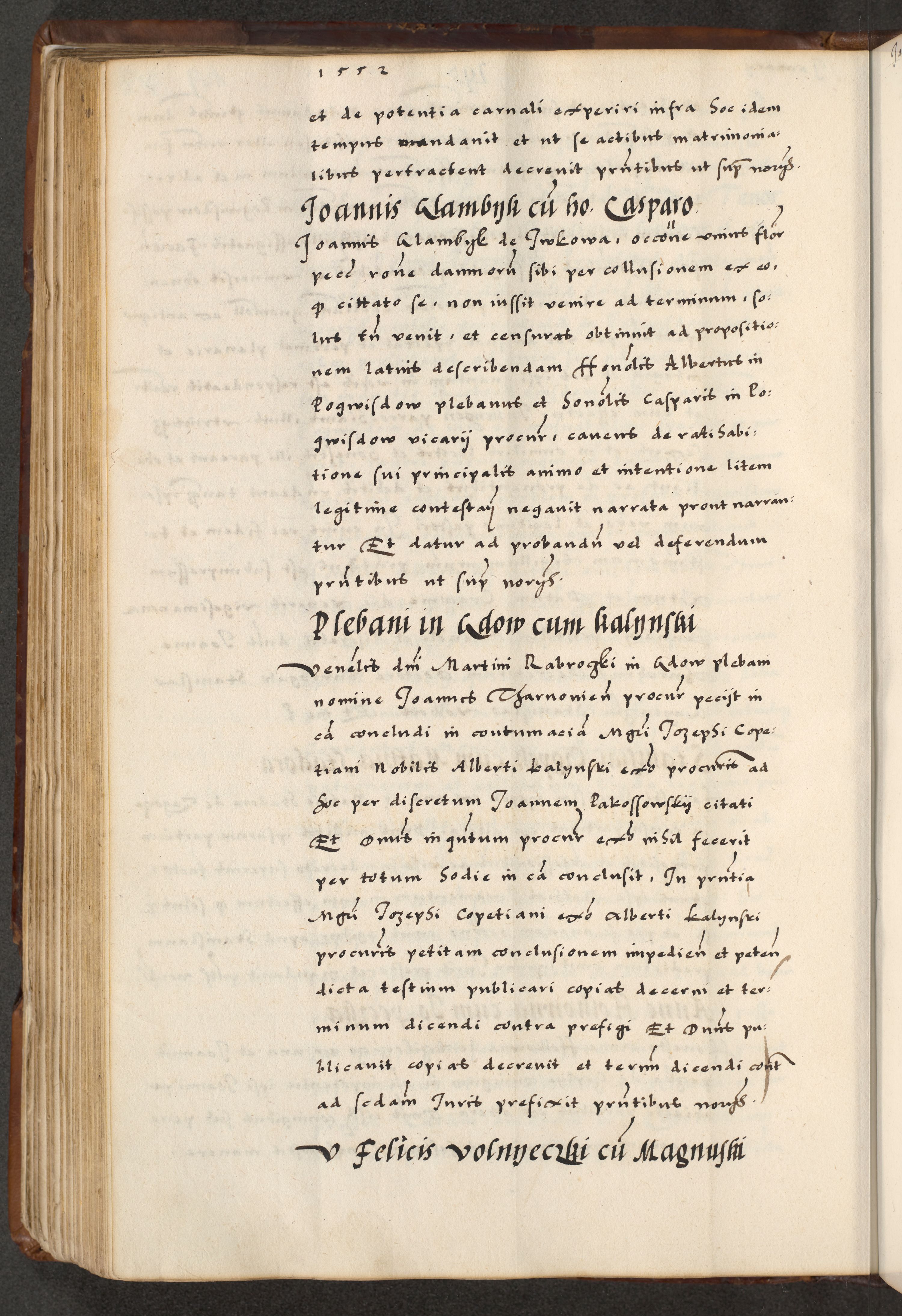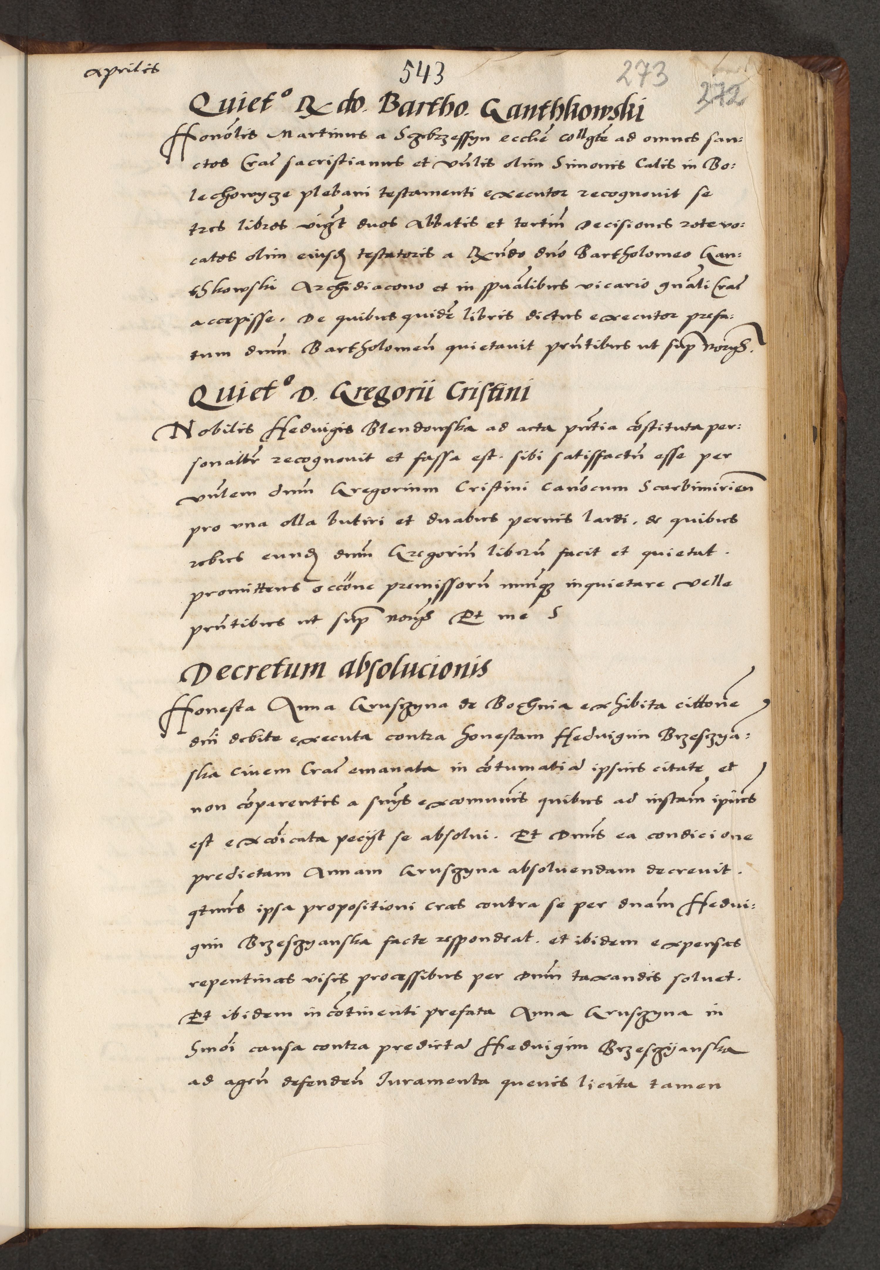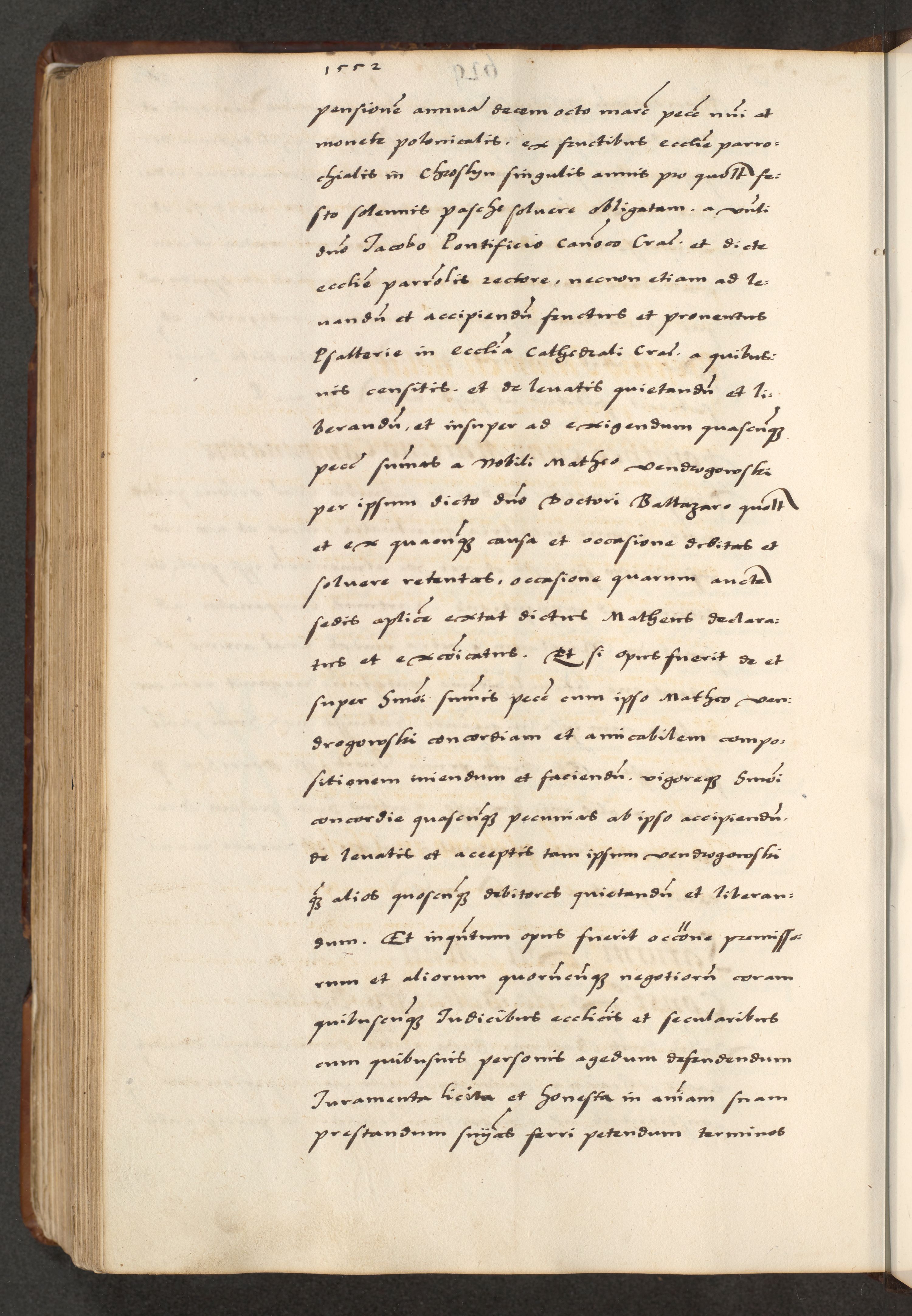 [A]cta actorum causarum, sententiarum tam diffinitivarum quam interloquutoriarum, obligationum, constitutionum et contractuum coram reverendo patre domino Petro Porembski preposito Osvieczimensi, canonico et officiali generali Cracoviensi de anno Domini millesimo quingentesimo quinguagesimo primo, cuius indictio est nona, pontificatus sanctissimi in Christo patris et domini nostri domini Juliii divina providencia pape tercii, anno secundo, a die et mense infrascriptis feliciter continiantur