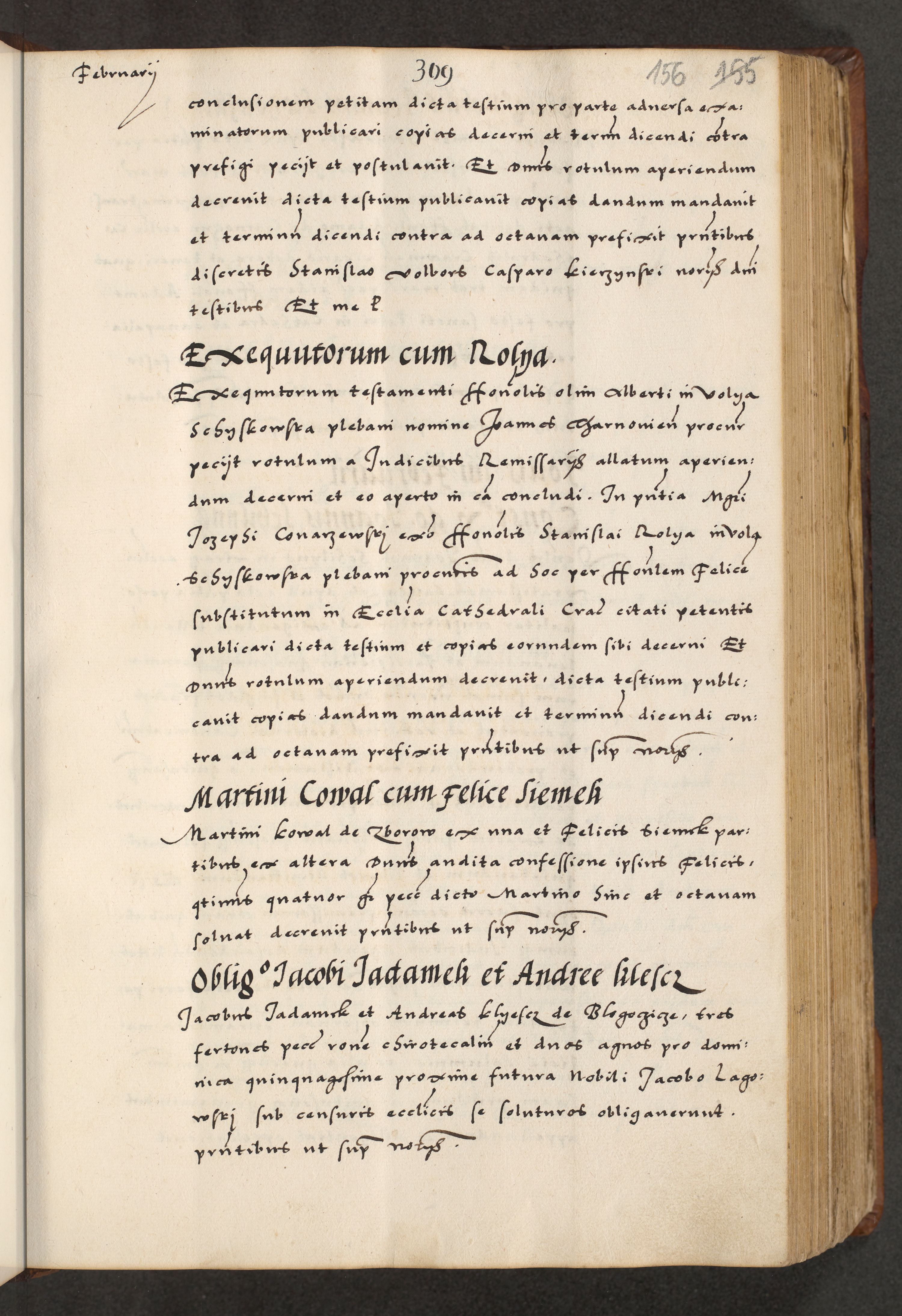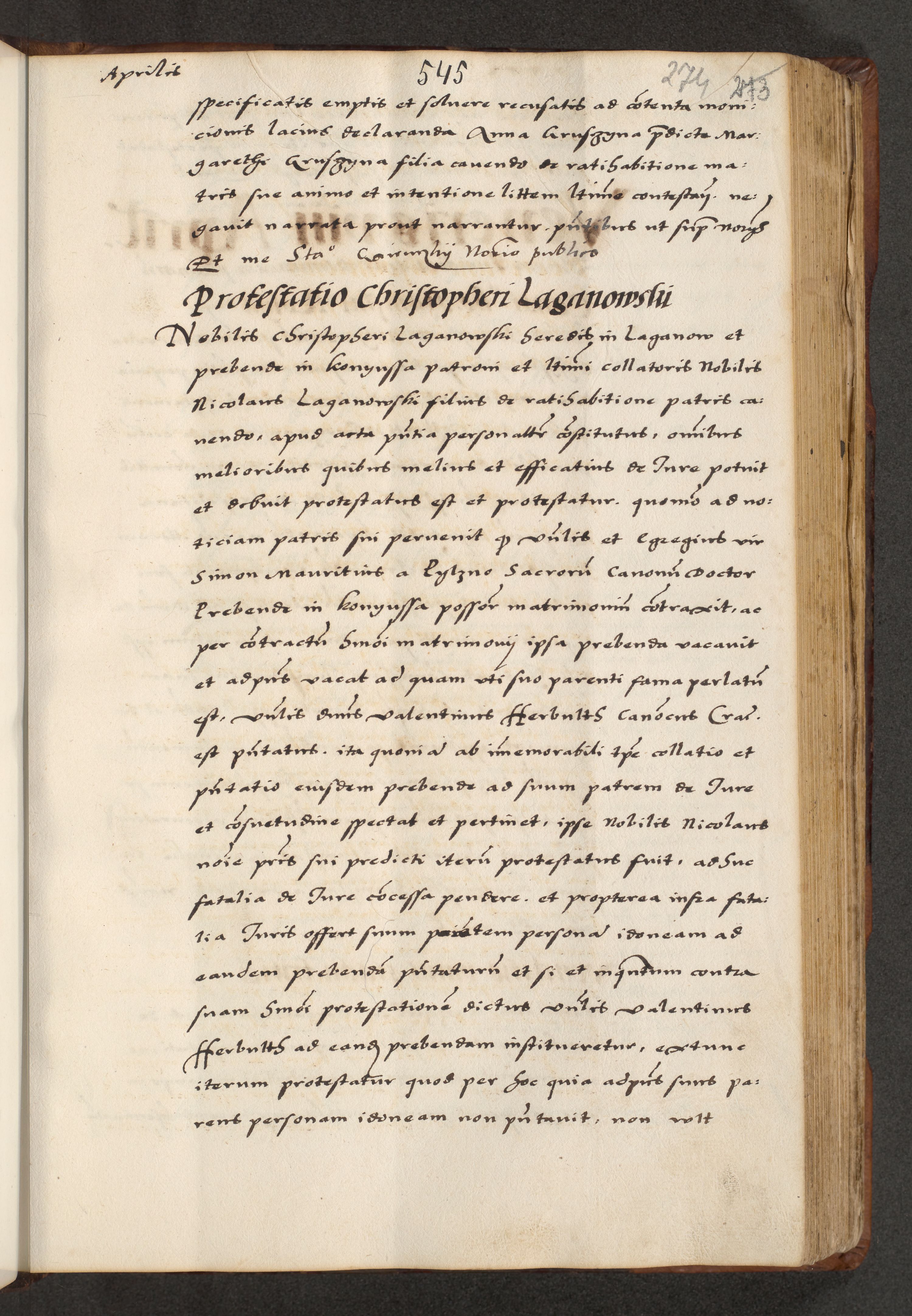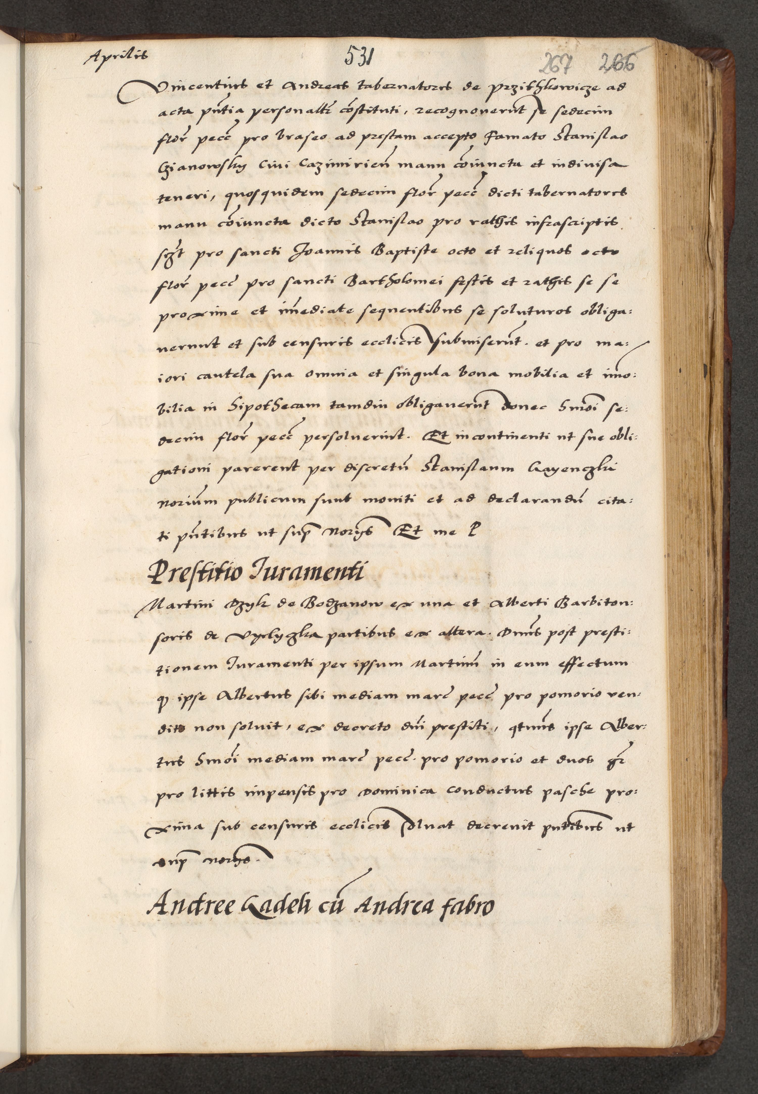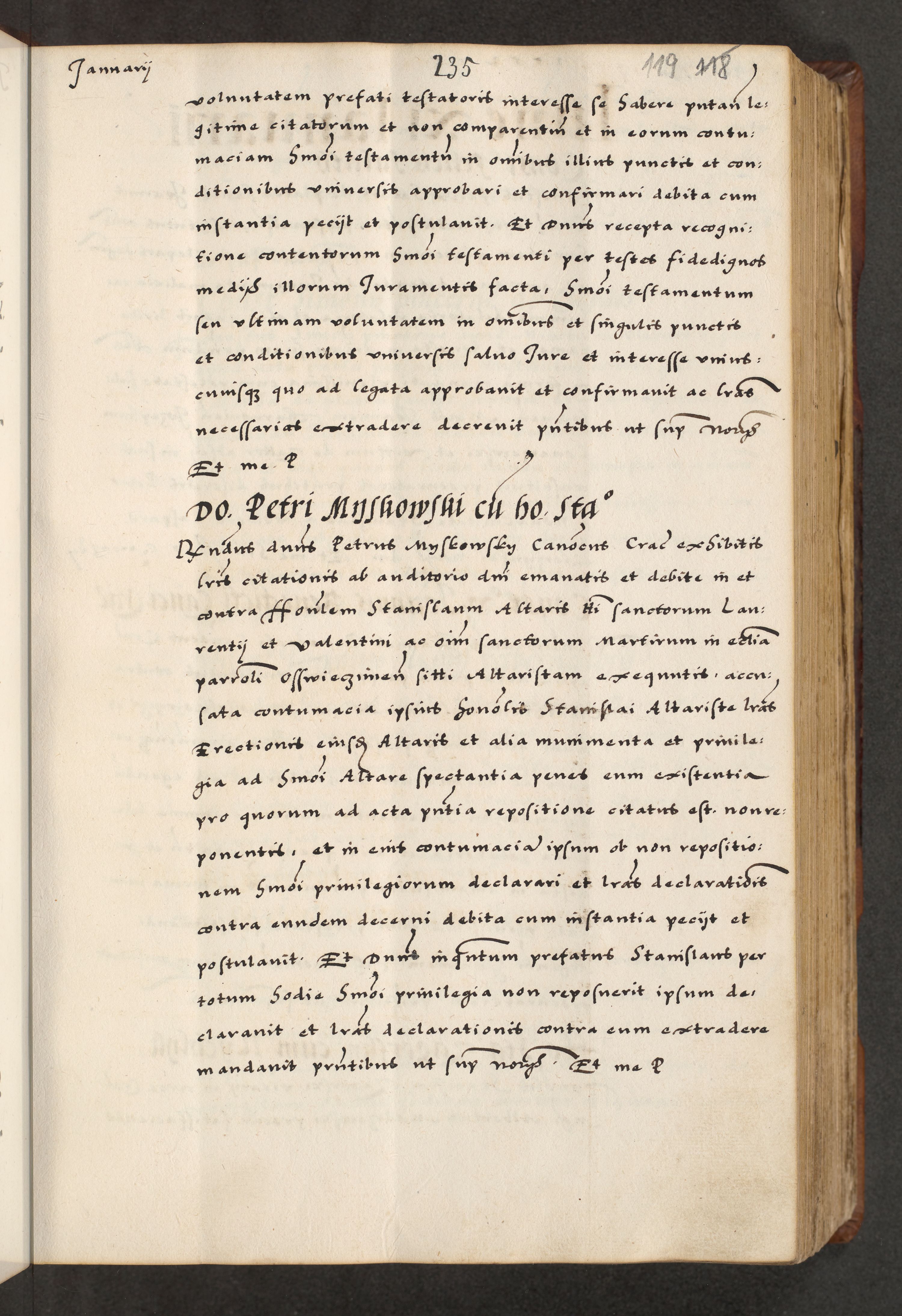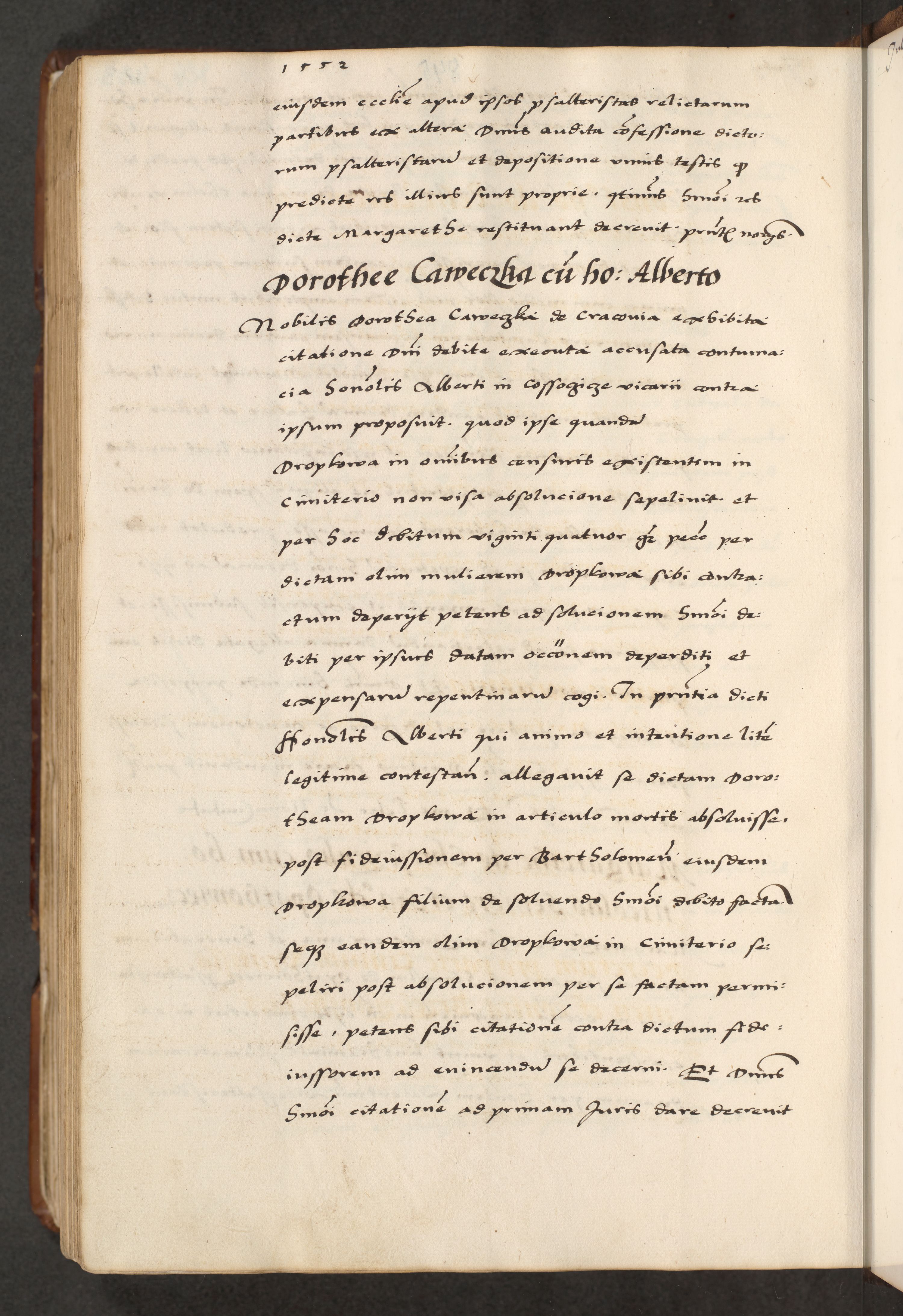 [A]cta actorum causarum, sententiarum tam diffinitivarum quam interloquutoriarum, obligationum, constitutionum et contractuum coram reverendo patre domino Petro Porembski preposito Osvieczimensi, canonico et officiali generali Cracoviensi de anno Domini millesimo quingentesimo quinguagesimo primo, cuius indictio est nona, pontificatus sanctissimi in Christo patris et domini nostri domini Juliii divina providencia pape tercii, anno secundo, a die et mense infrascriptis feliciter continiantur
