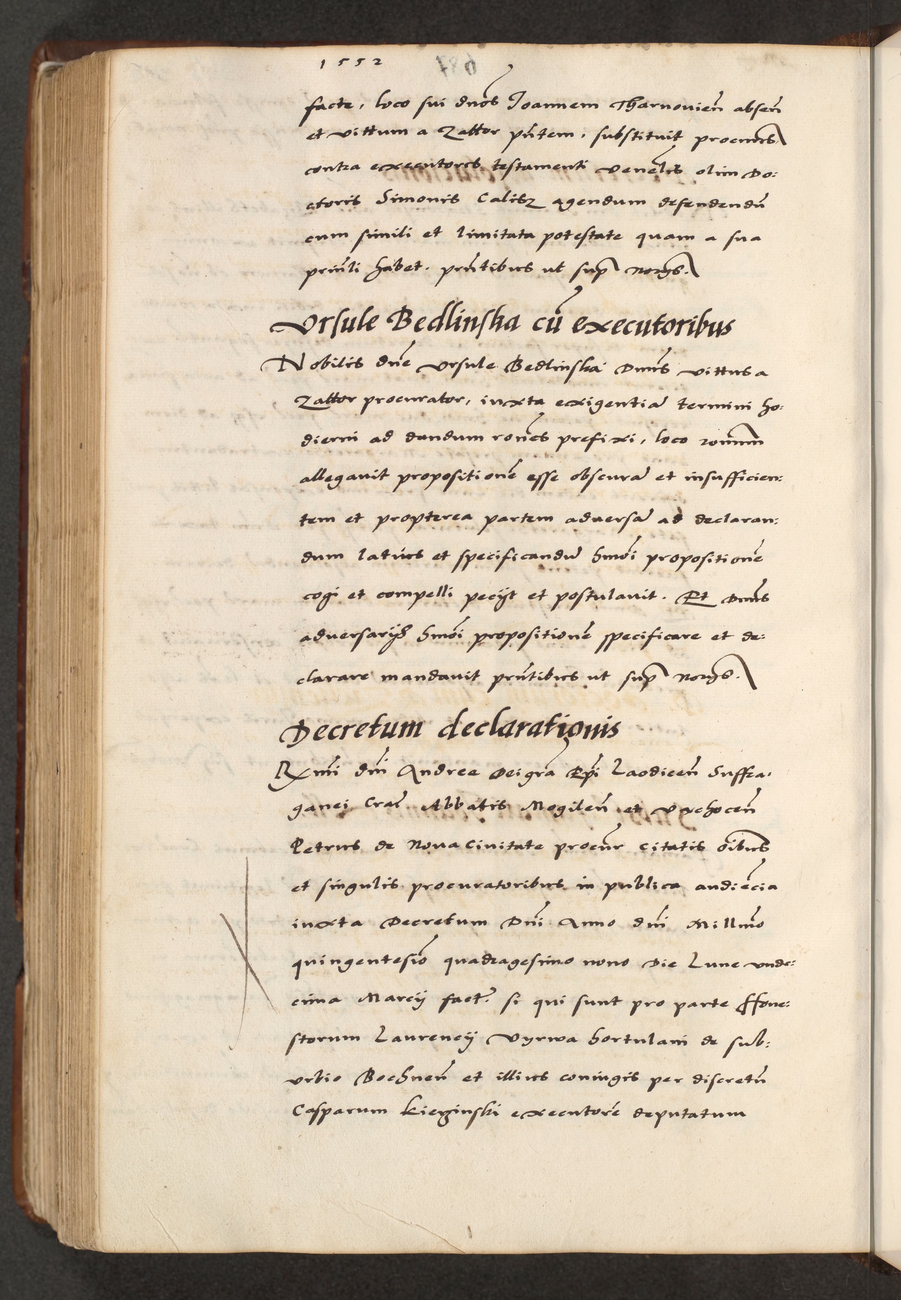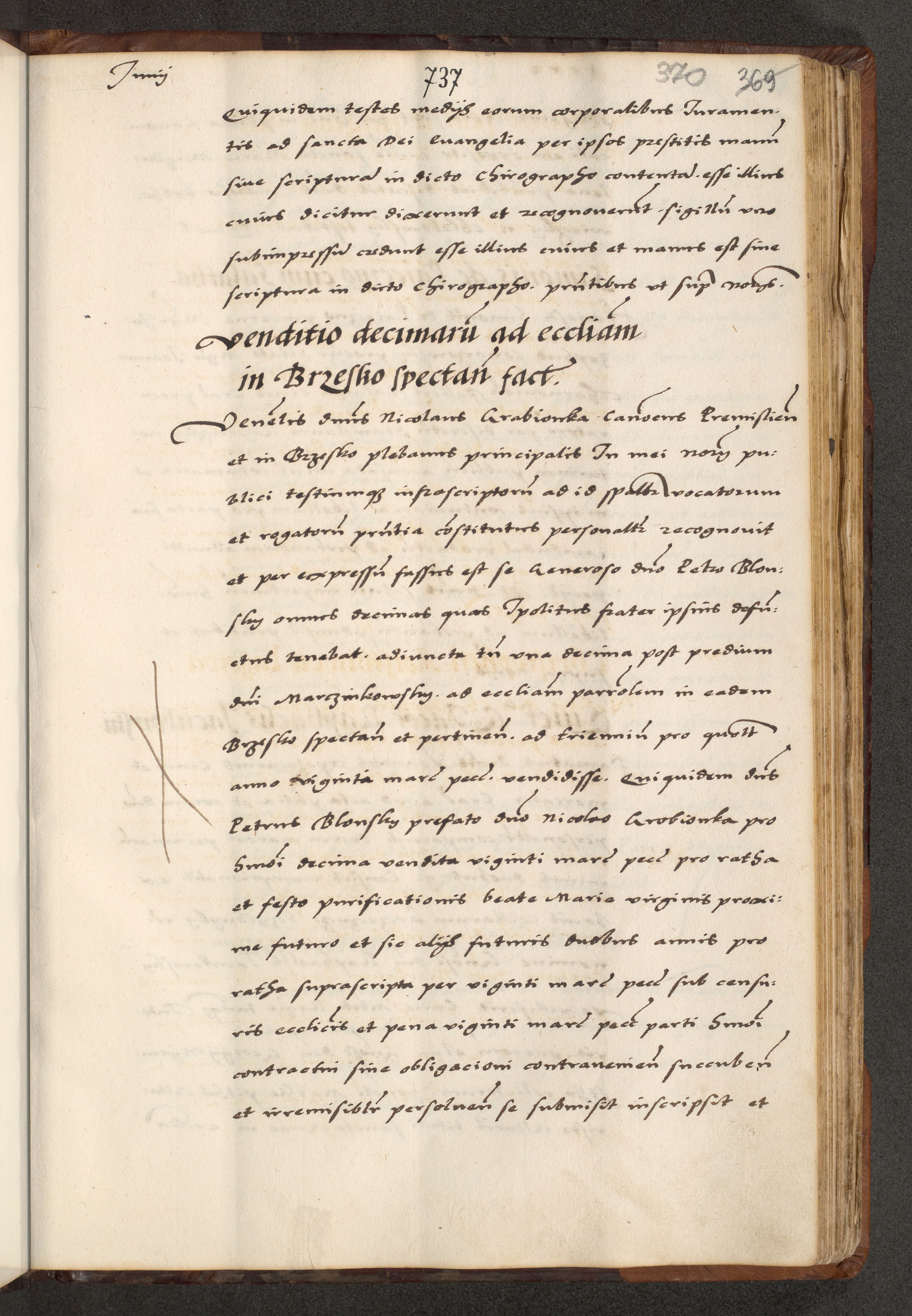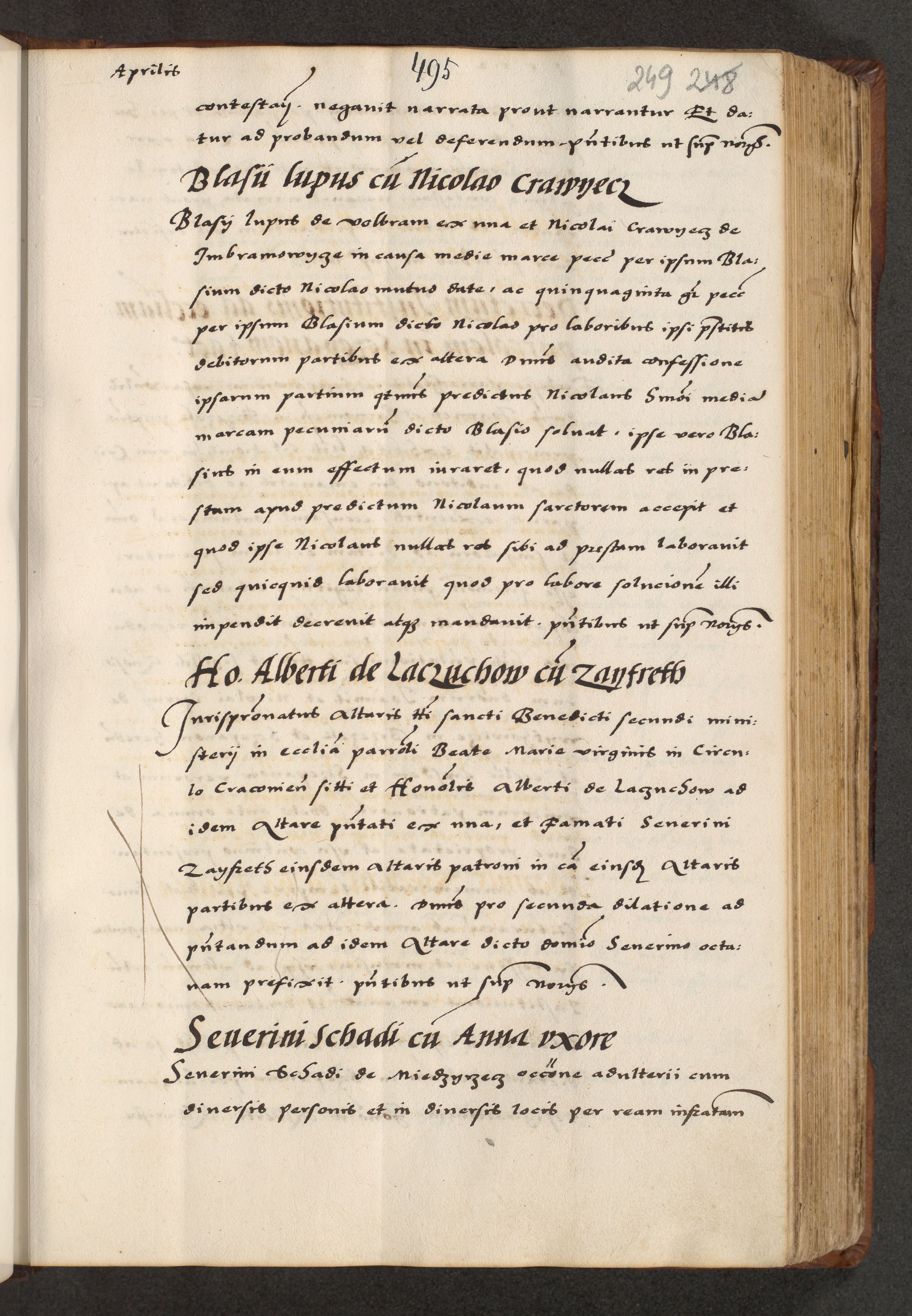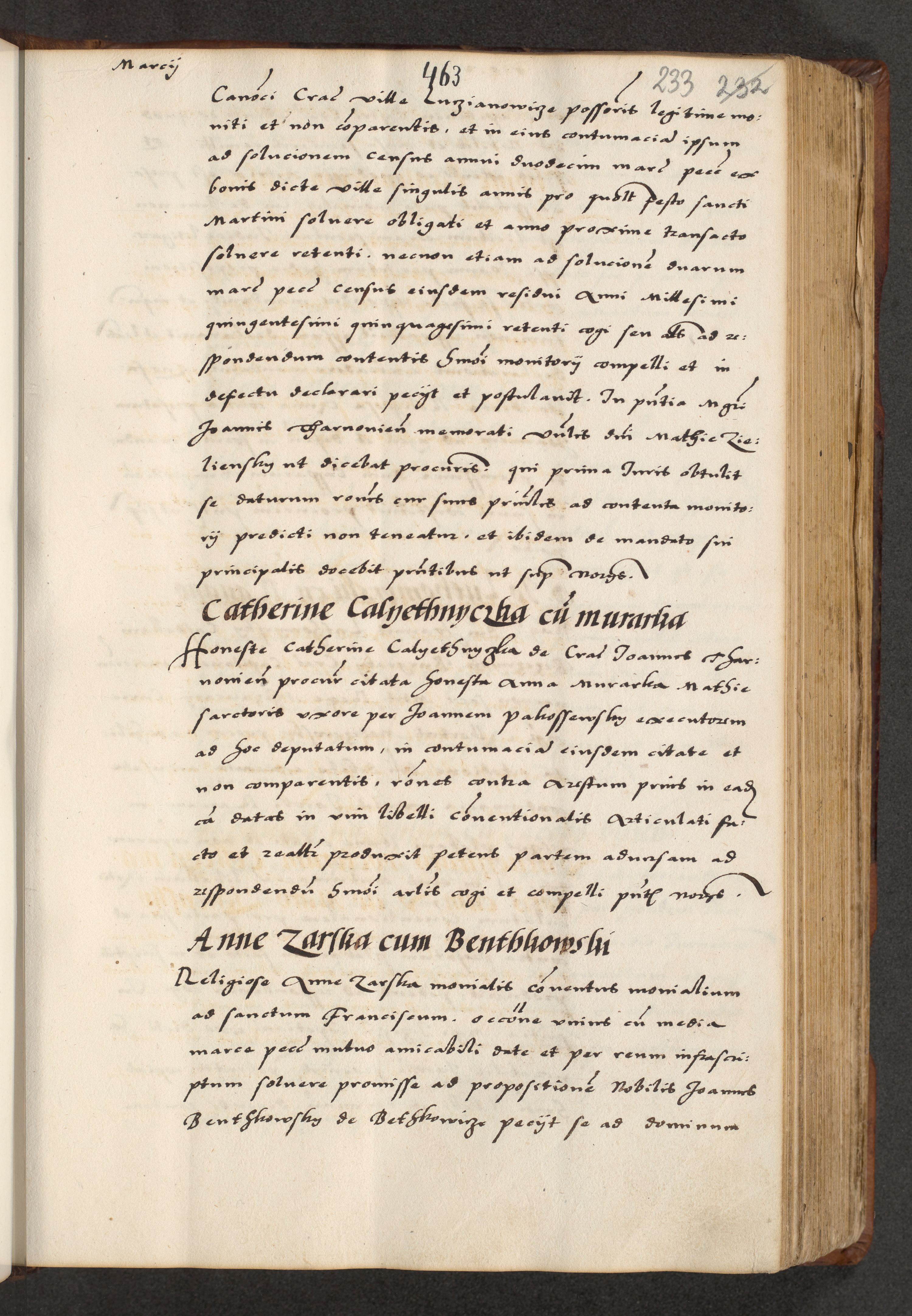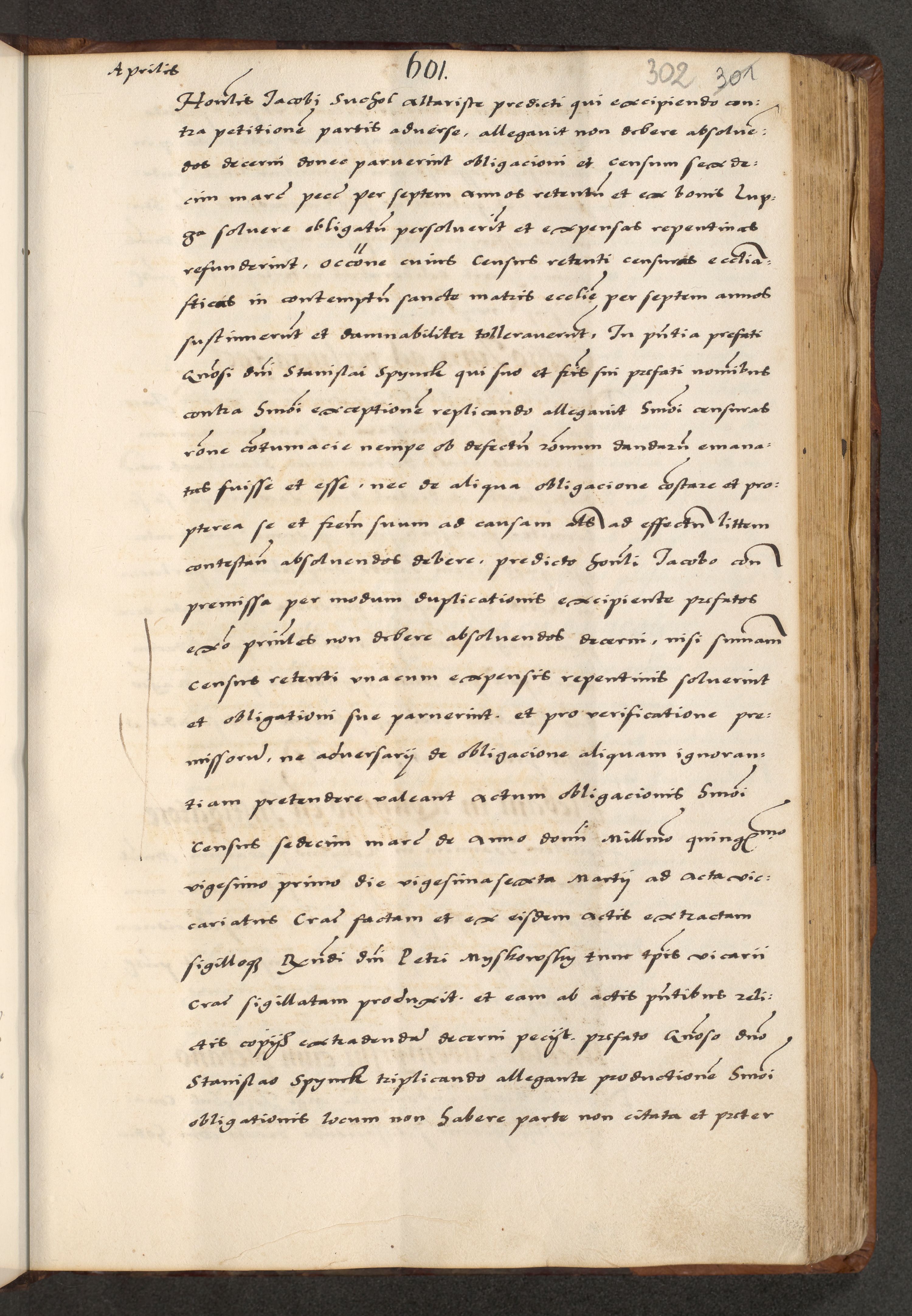 [A]cta actorum causarum, sententiarum tam diffinitivarum quam interloquutoriarum, obligationum, constitutionum et contractuum coram reverendo patre domino Petro Porembski preposito Osvieczimensi, canonico et officiali generali Cracoviensi de anno Domini millesimo quingentesimo quinguagesimo primo, cuius indictio est nona, pontificatus sanctissimi in Christo patris et domini nostri domini Juliii divina providencia pape tercii, anno secundo, a die et mense infrascriptis feliciter continiantur