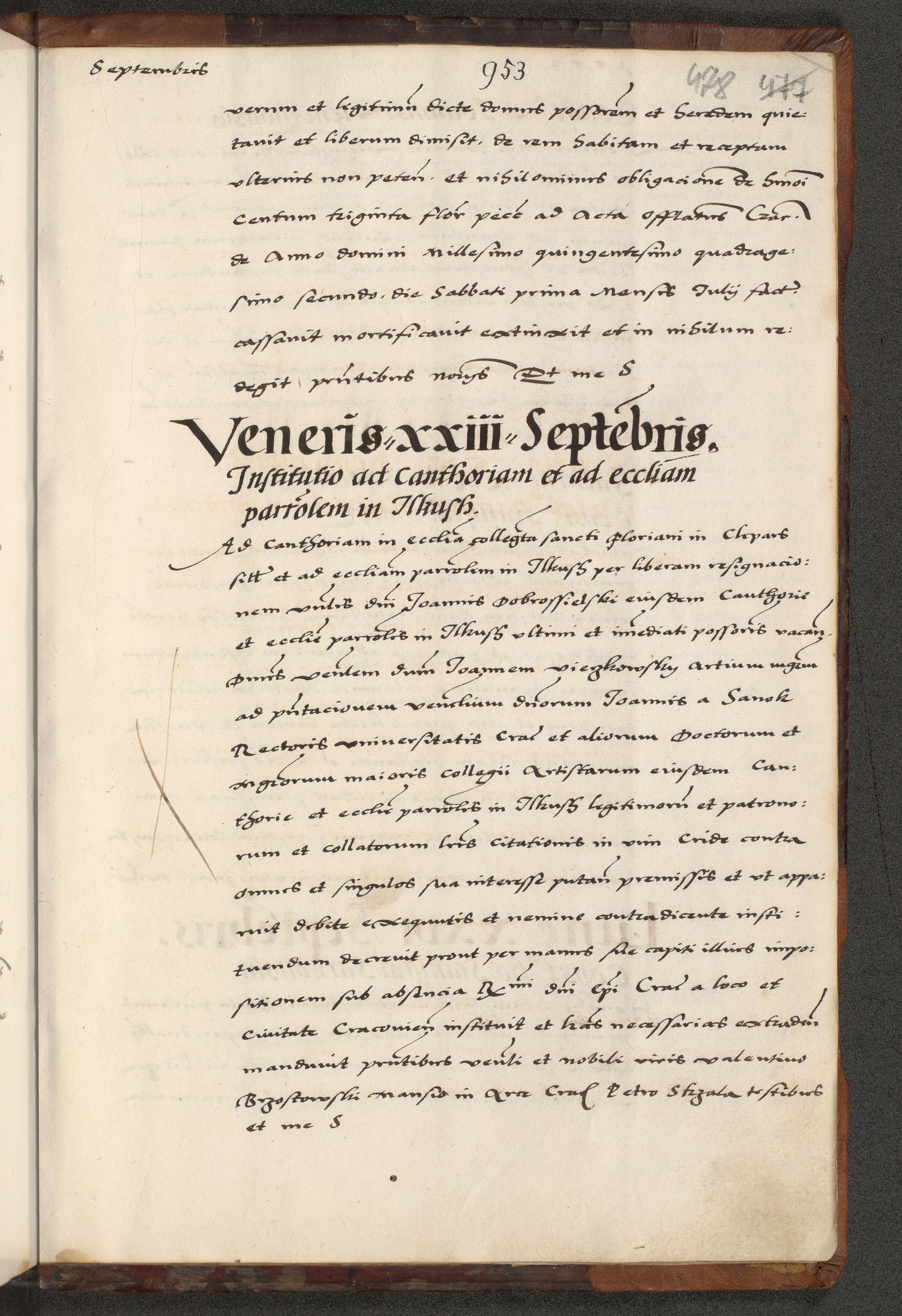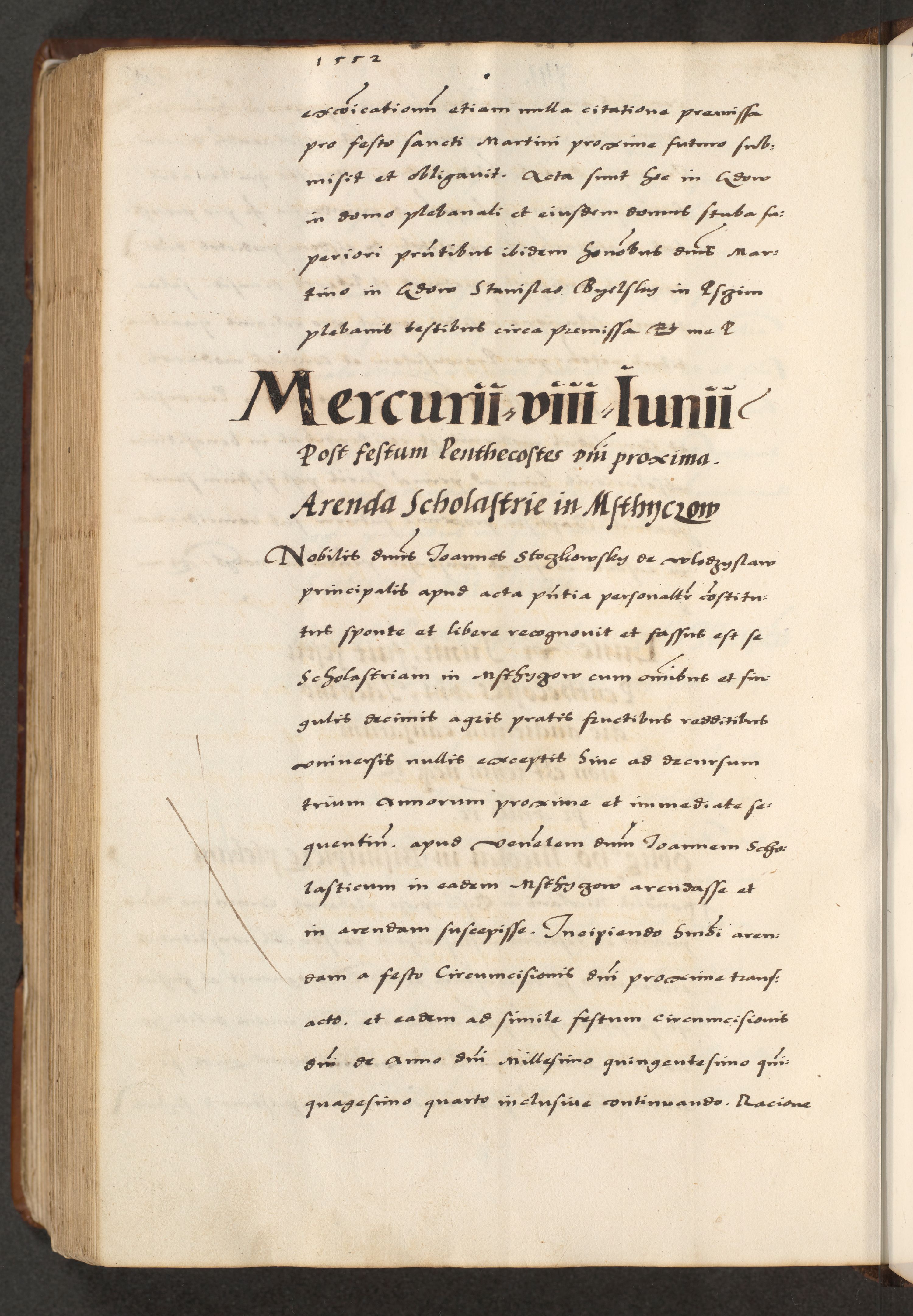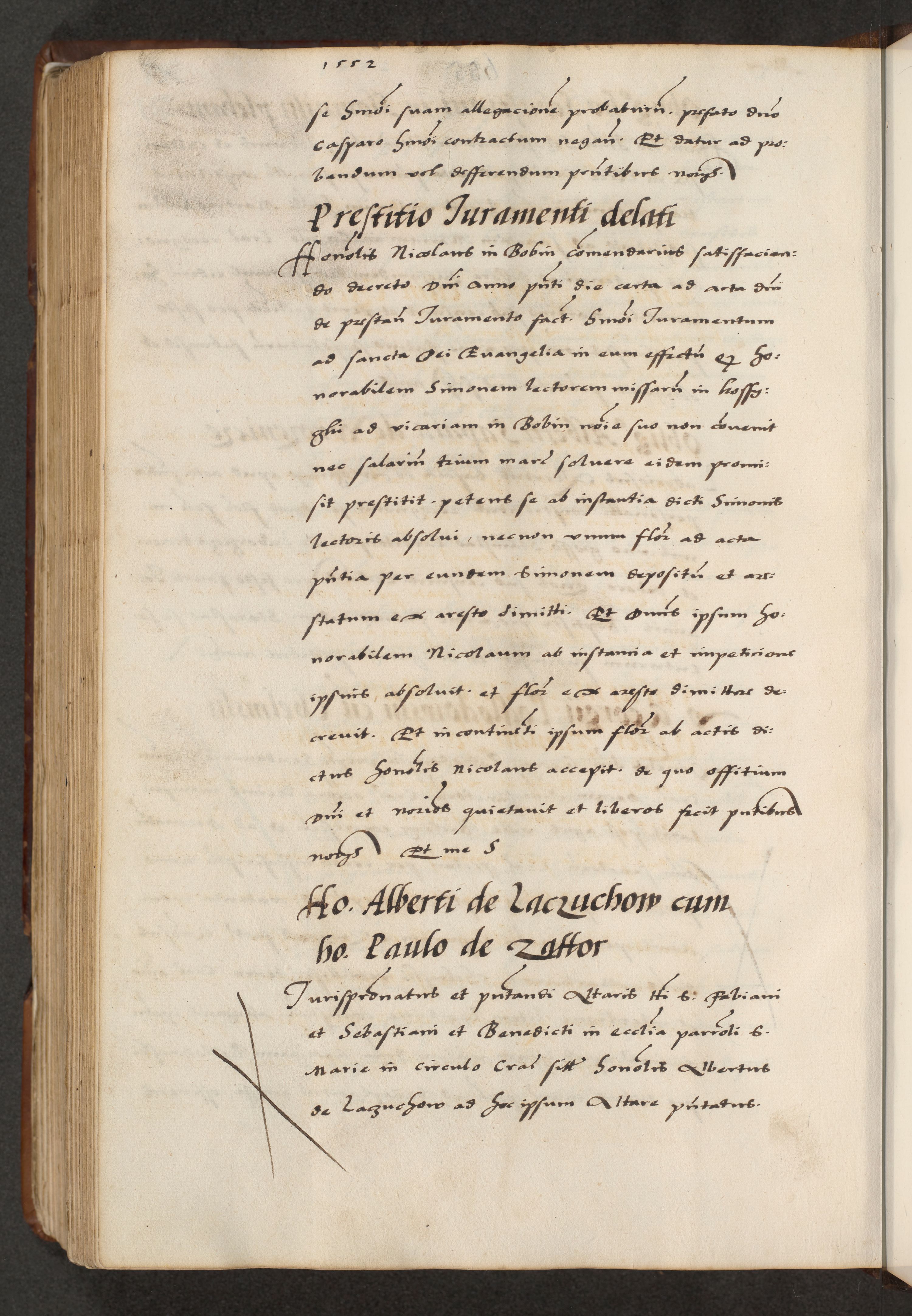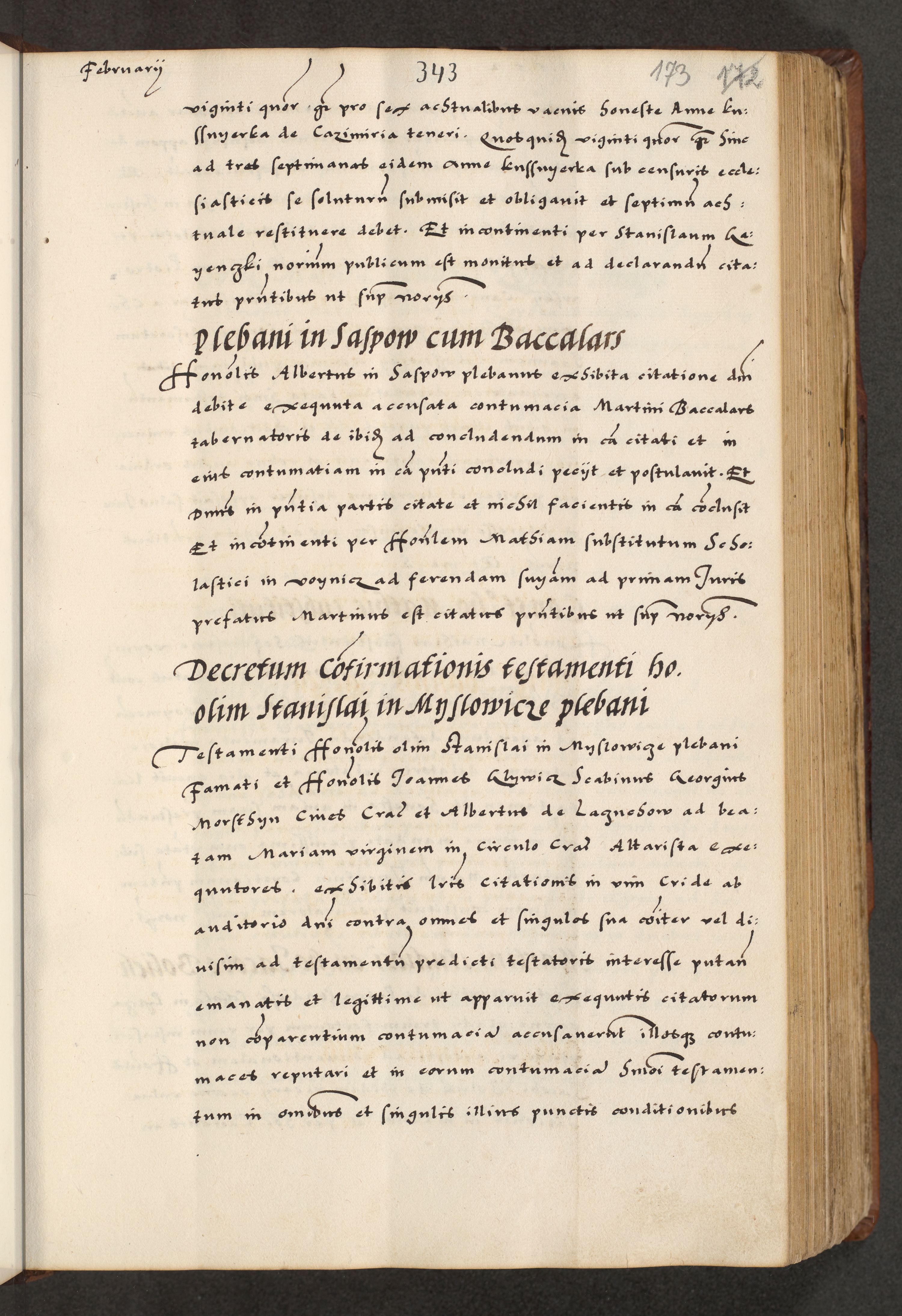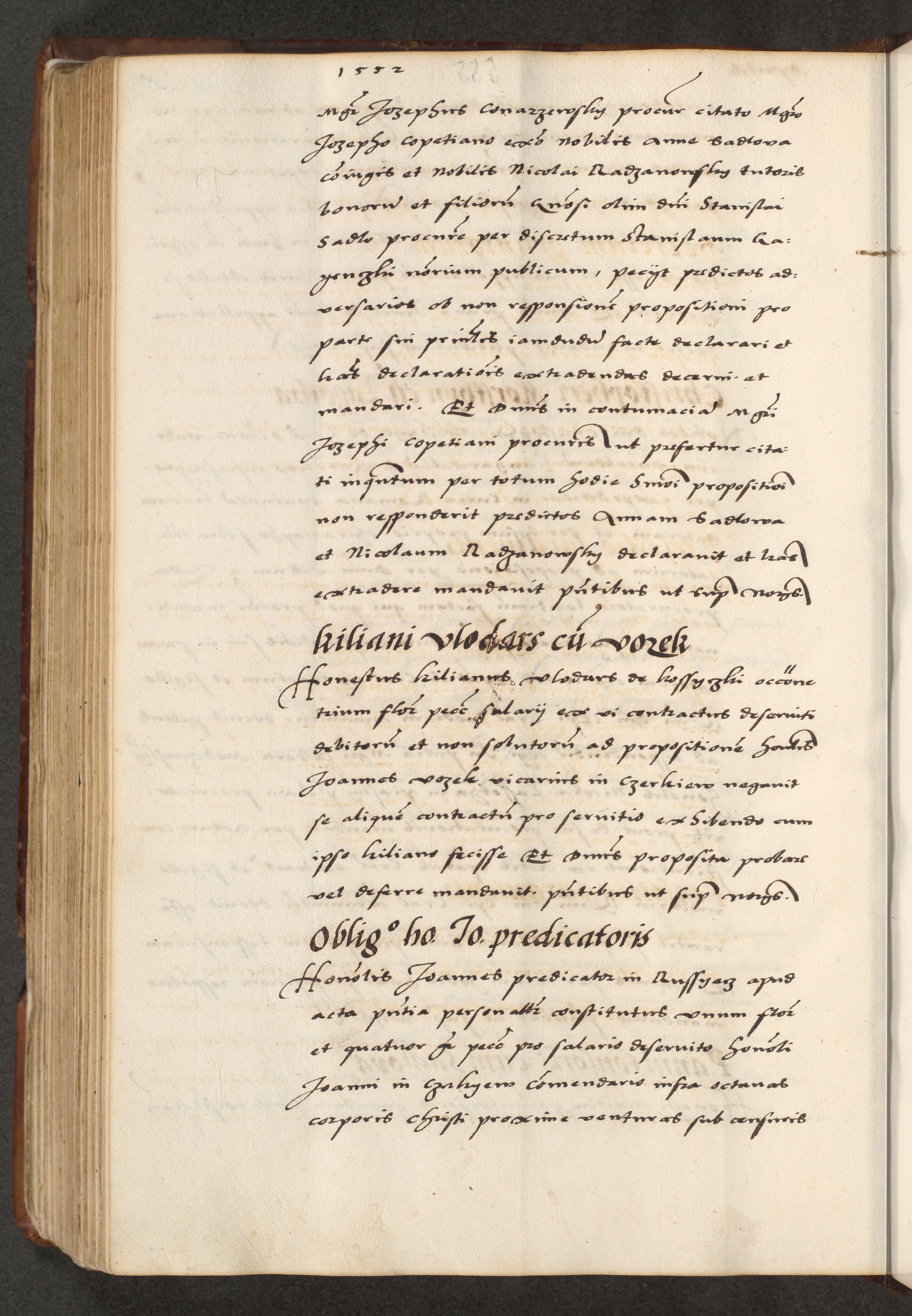 [A]cta actorum causarum, sententiarum tam diffinitivarum quam interloquutoriarum, obligationum, constitutionum et contractuum coram reverendo patre domino Petro Porembski preposito Osvieczimensi, canonico et officiali generali Cracoviensi de anno Domini millesimo quingentesimo quinguagesimo primo, cuius indictio est nona, pontificatus sanctissimi in Christo patris et domini nostri domini Juliii divina providencia pape tercii, anno secundo, a die et mense infrascriptis feliciter continiantur