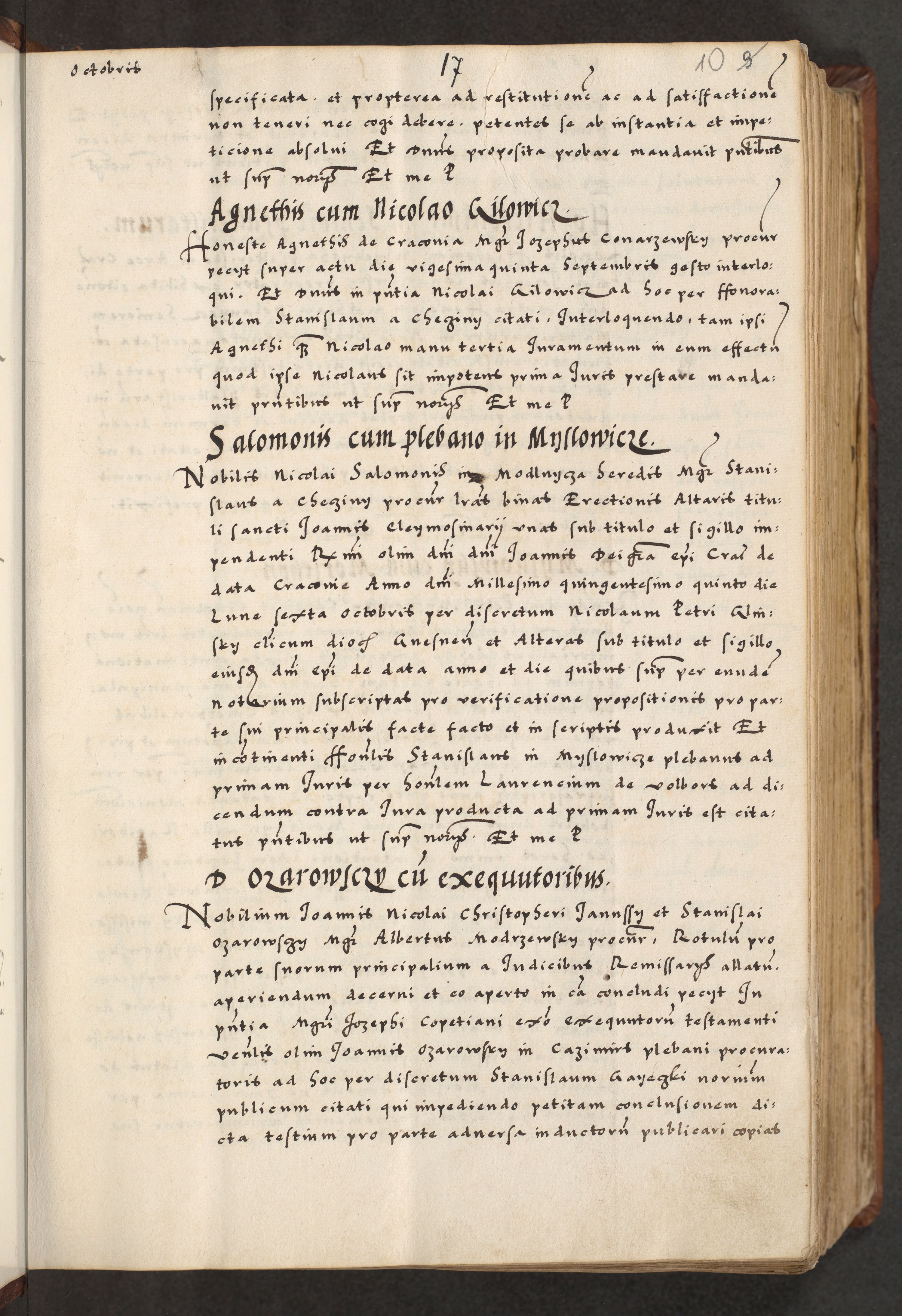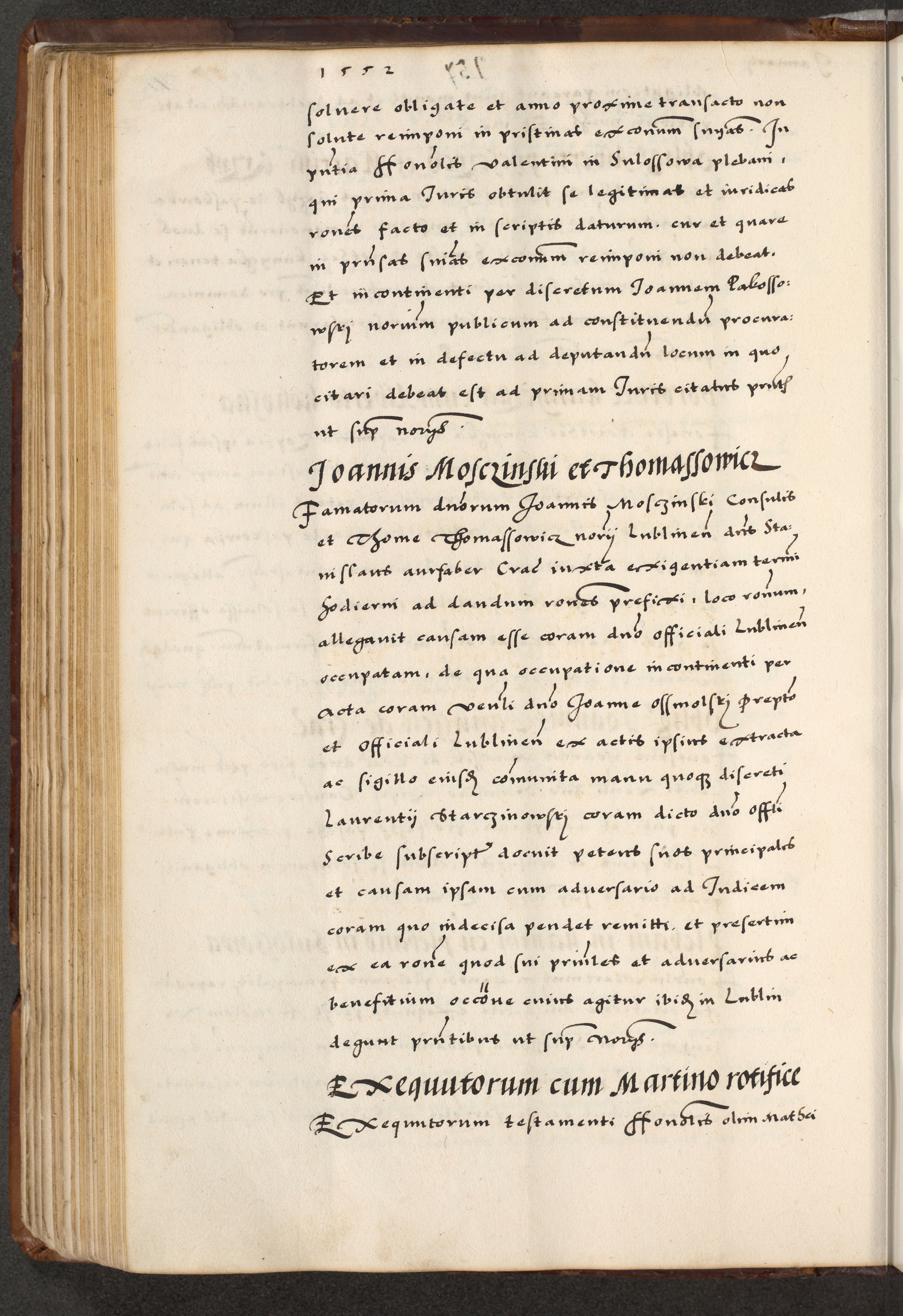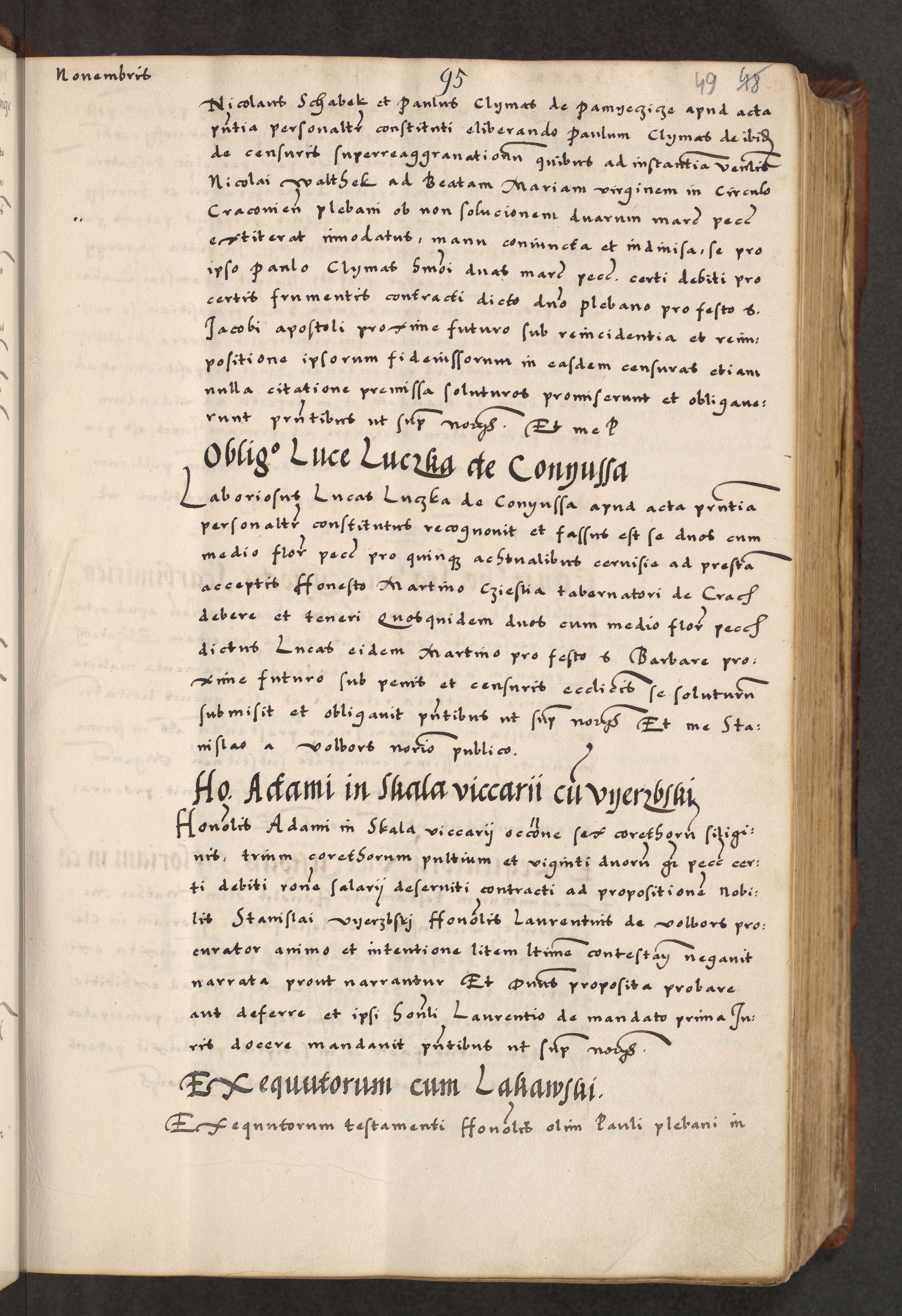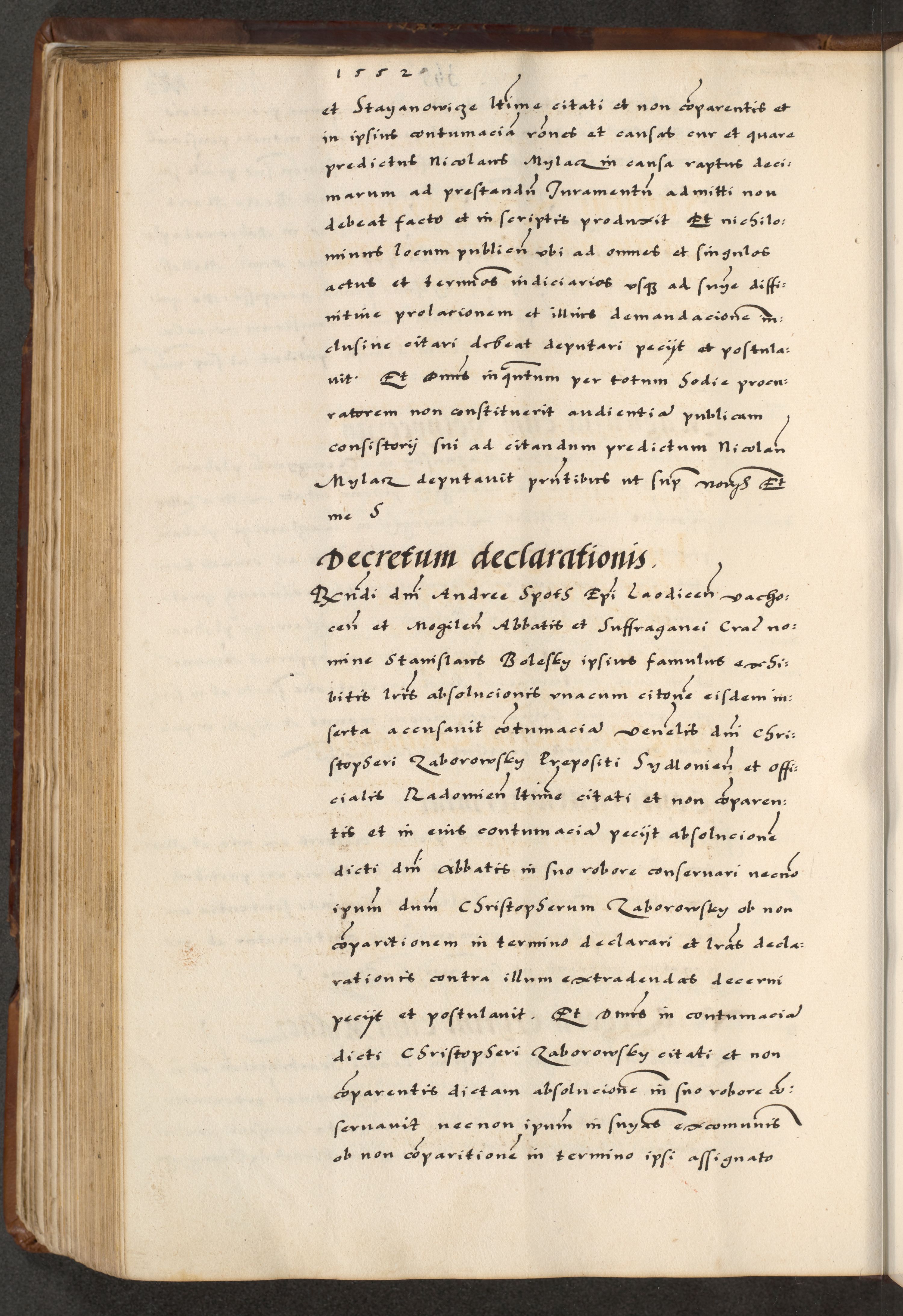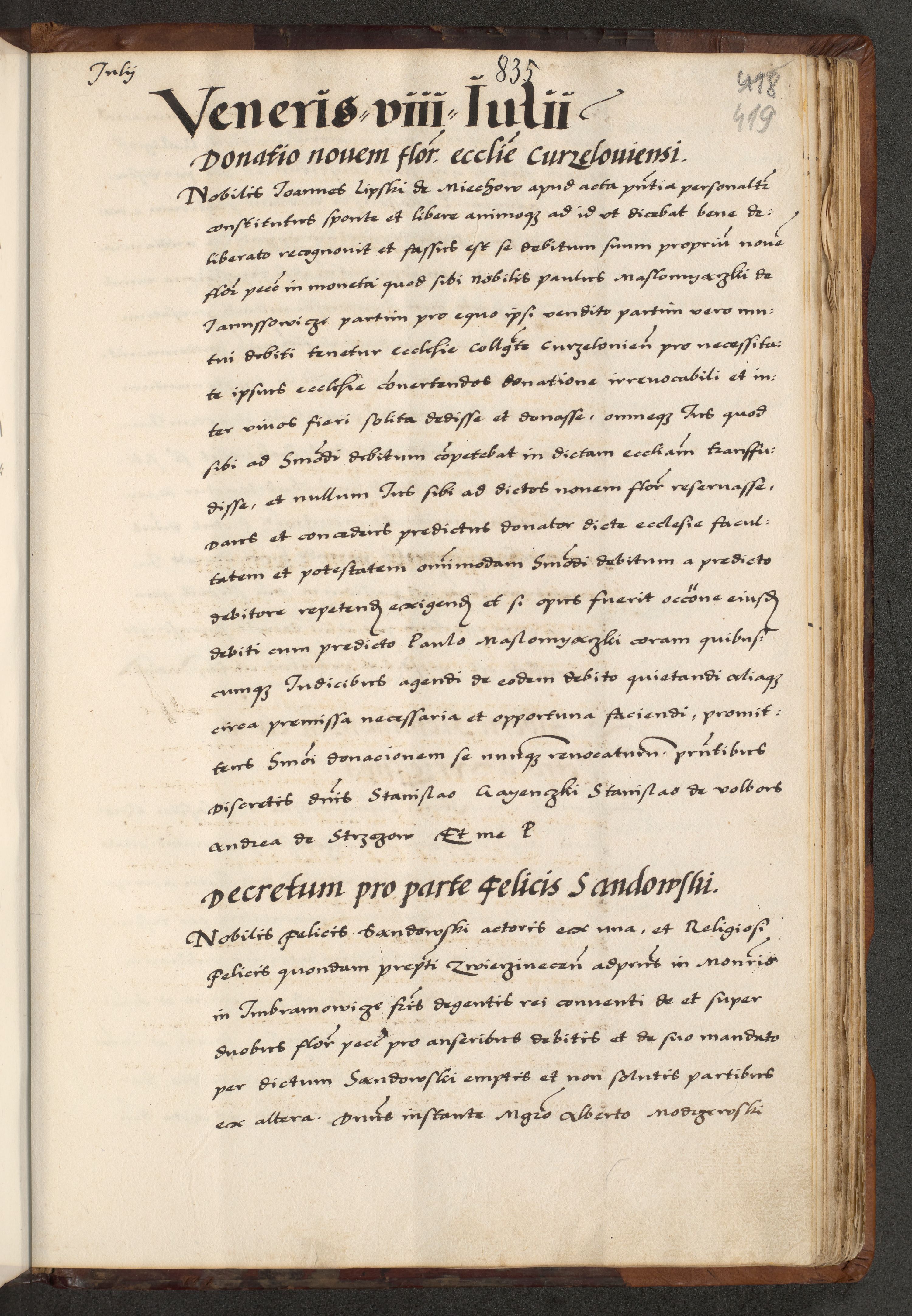 [A]cta actorum causarum, sententiarum tam diffinitivarum quam interloquutoriarum, obligationum, constitutionum et contractuum coram reverendo patre domino Petro Porembski preposito Osvieczimensi, canonico et officiali generali Cracoviensi de anno Domini millesimo quingentesimo quinguagesimo primo, cuius indictio est nona, pontificatus sanctissimi in Christo patris et domini nostri domini Juliii divina providencia pape tercii, anno secundo, a die et mense infrascriptis feliciter continiantur