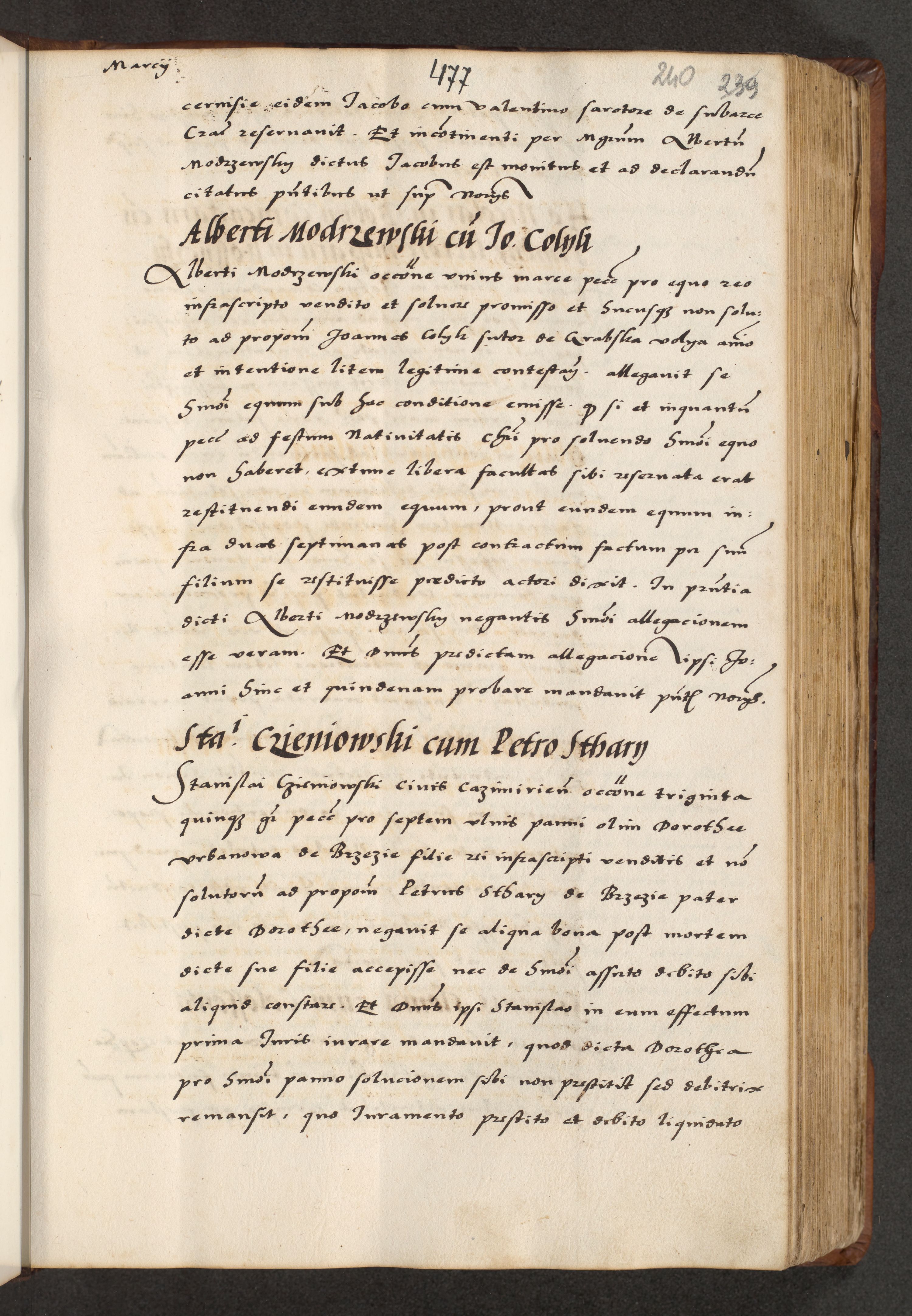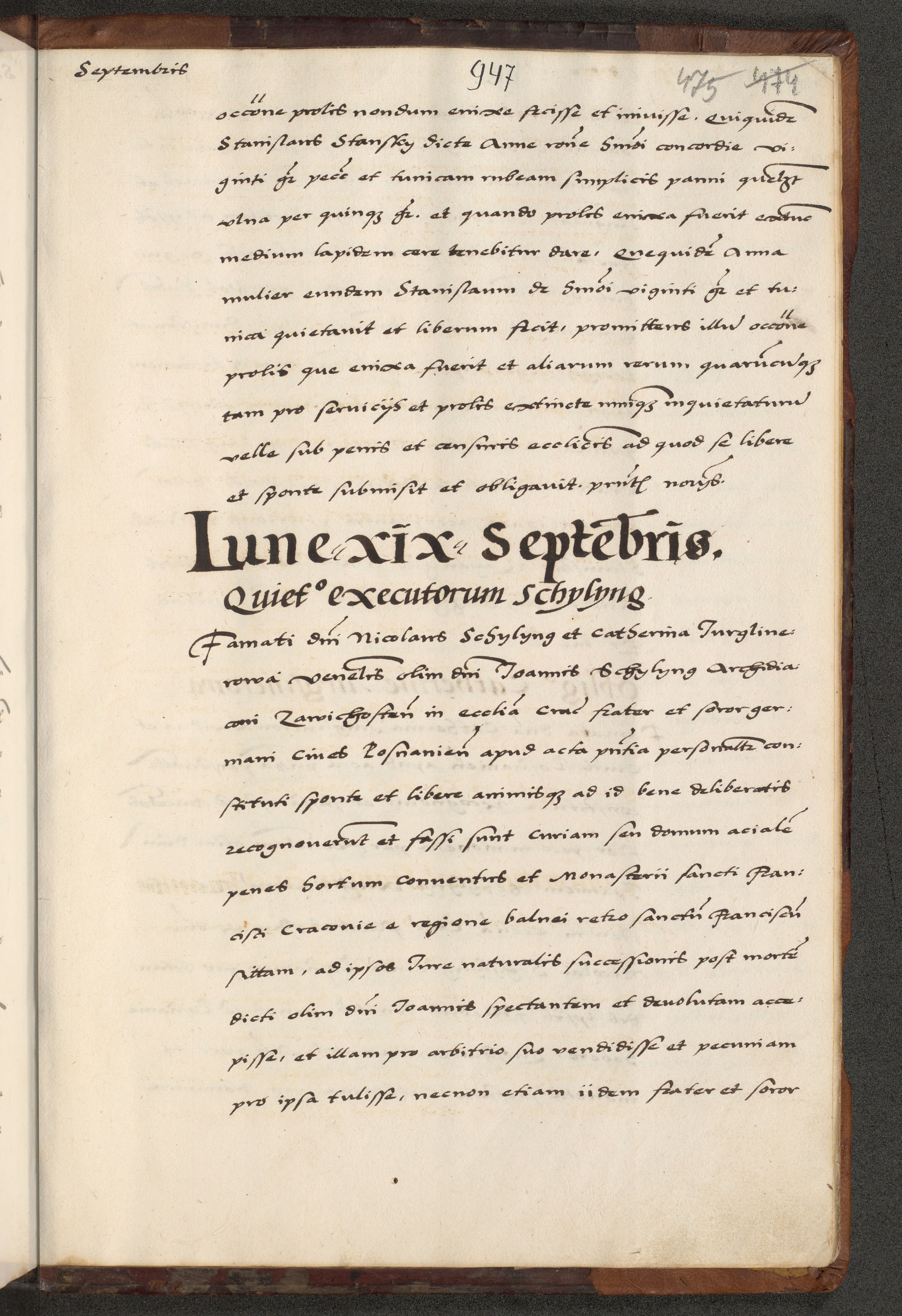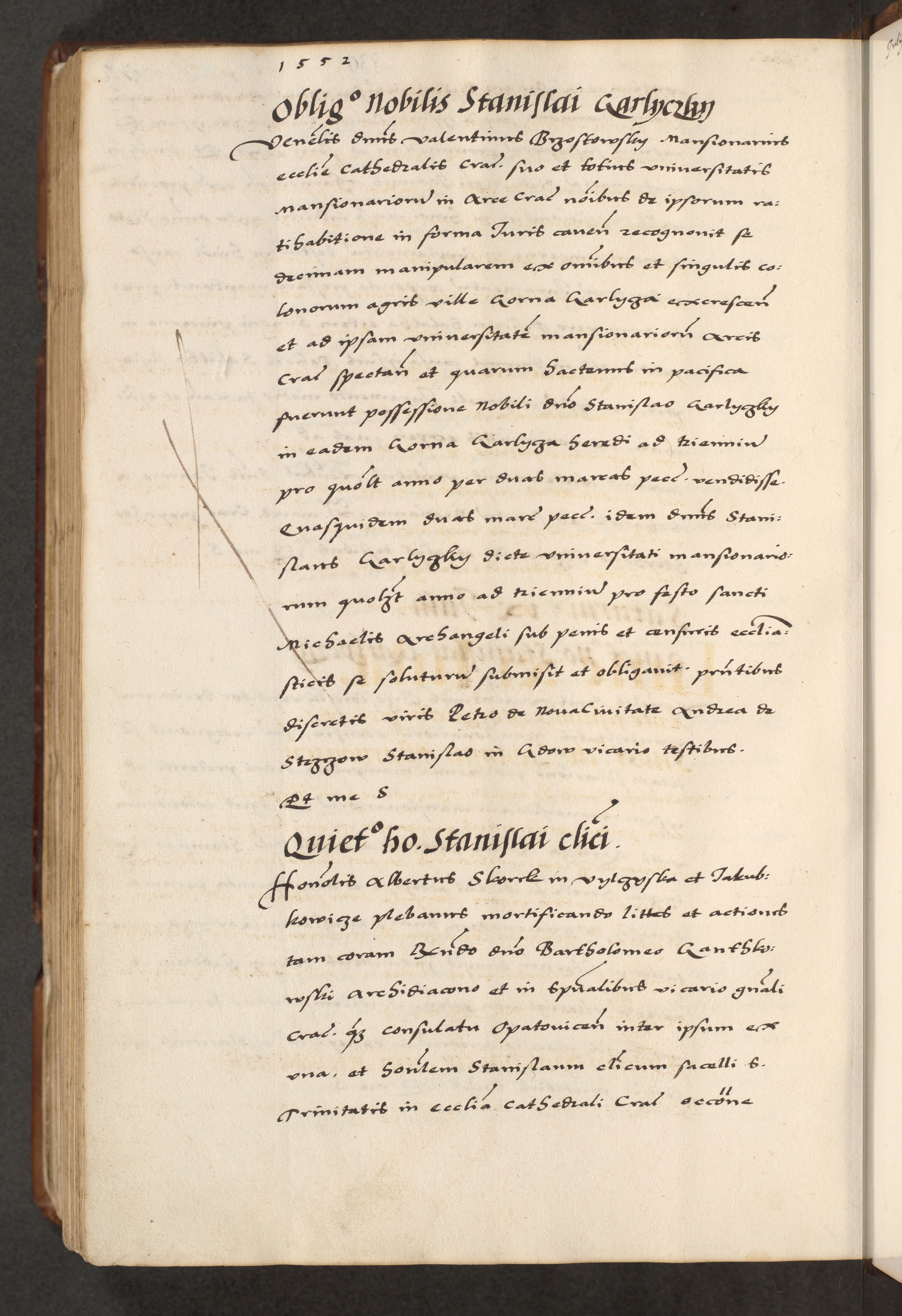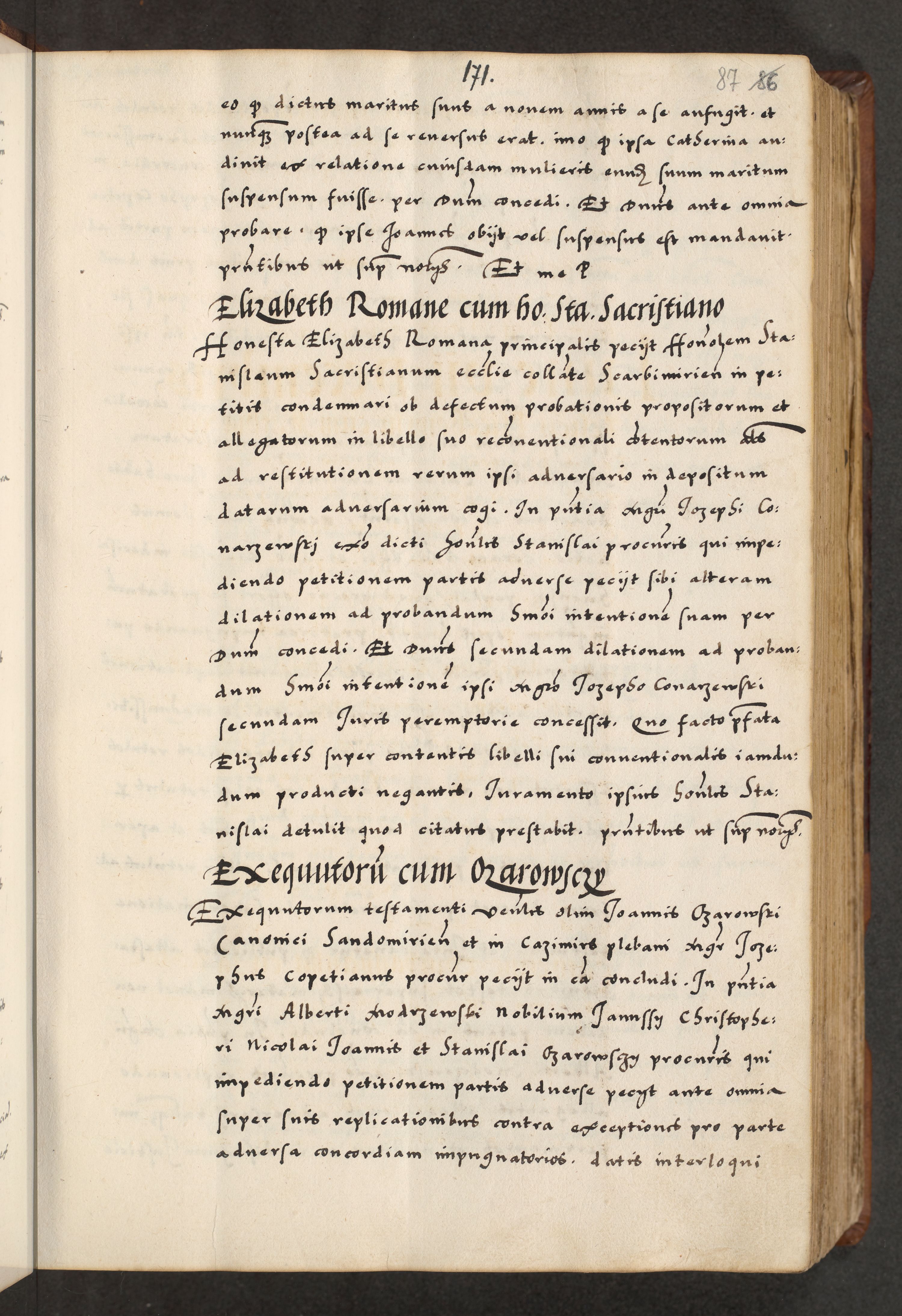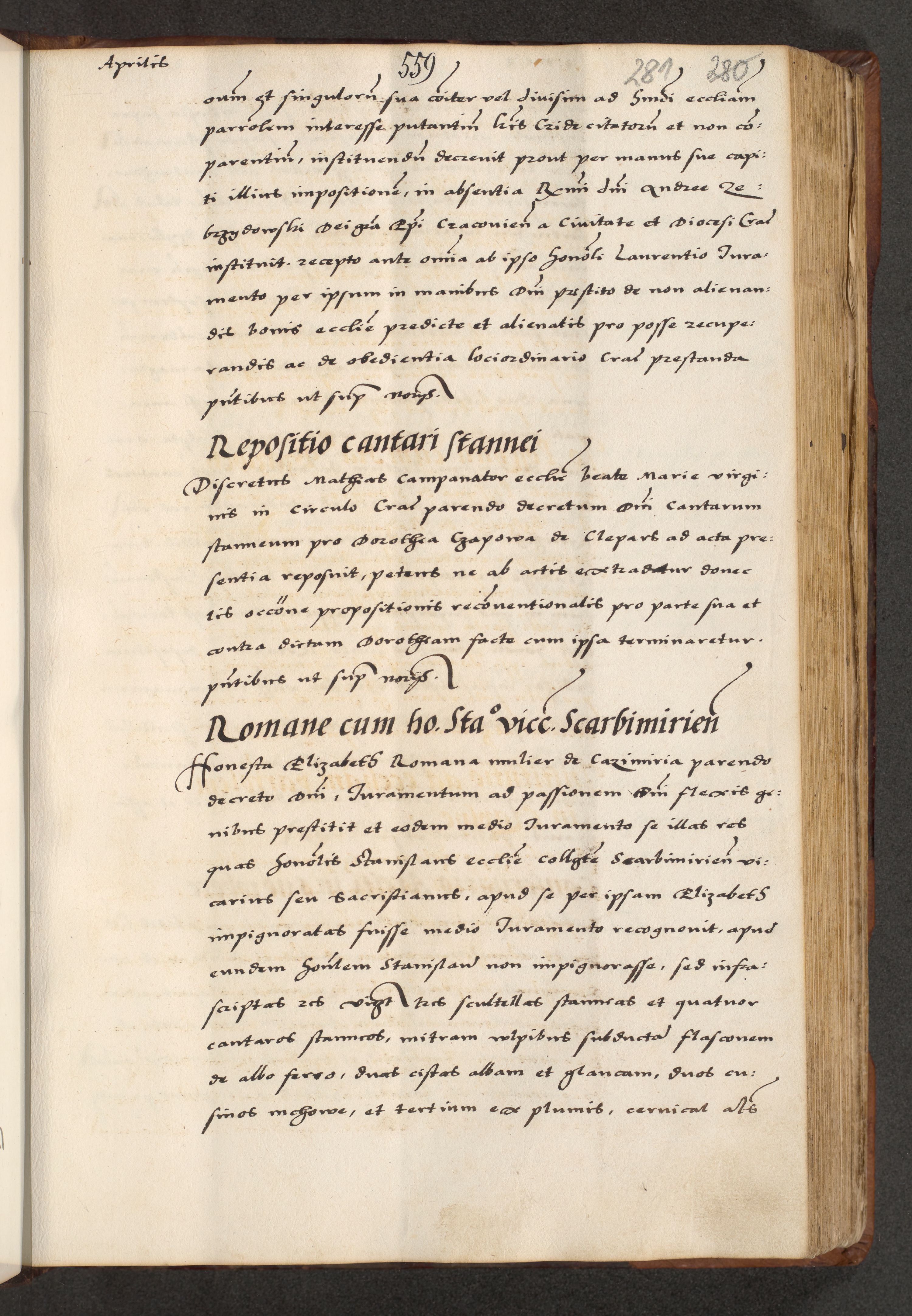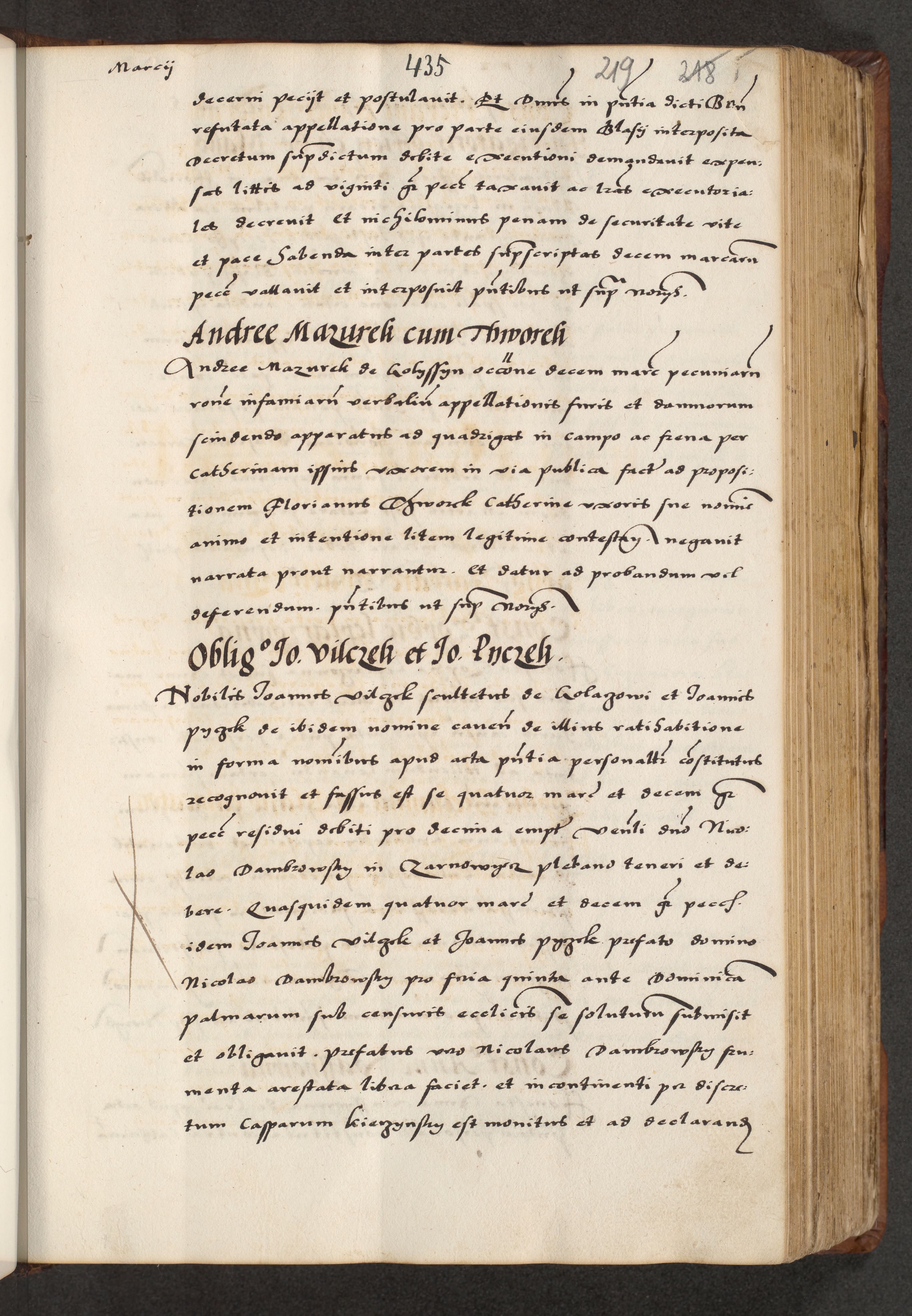 [A]cta actorum causarum, sententiarum tam diffinitivarum quam interloquutoriarum, obligationum, constitutionum et contractuum coram reverendo patre domino Petro Porembski preposito Osvieczimensi, canonico et officiali generali Cracoviensi de anno Domini millesimo quingentesimo quinguagesimo primo, cuius indictio est nona, pontificatus sanctissimi in Christo patris et domini nostri domini Juliii divina providencia pape tercii, anno secundo, a die et mense infrascriptis feliciter continiantur