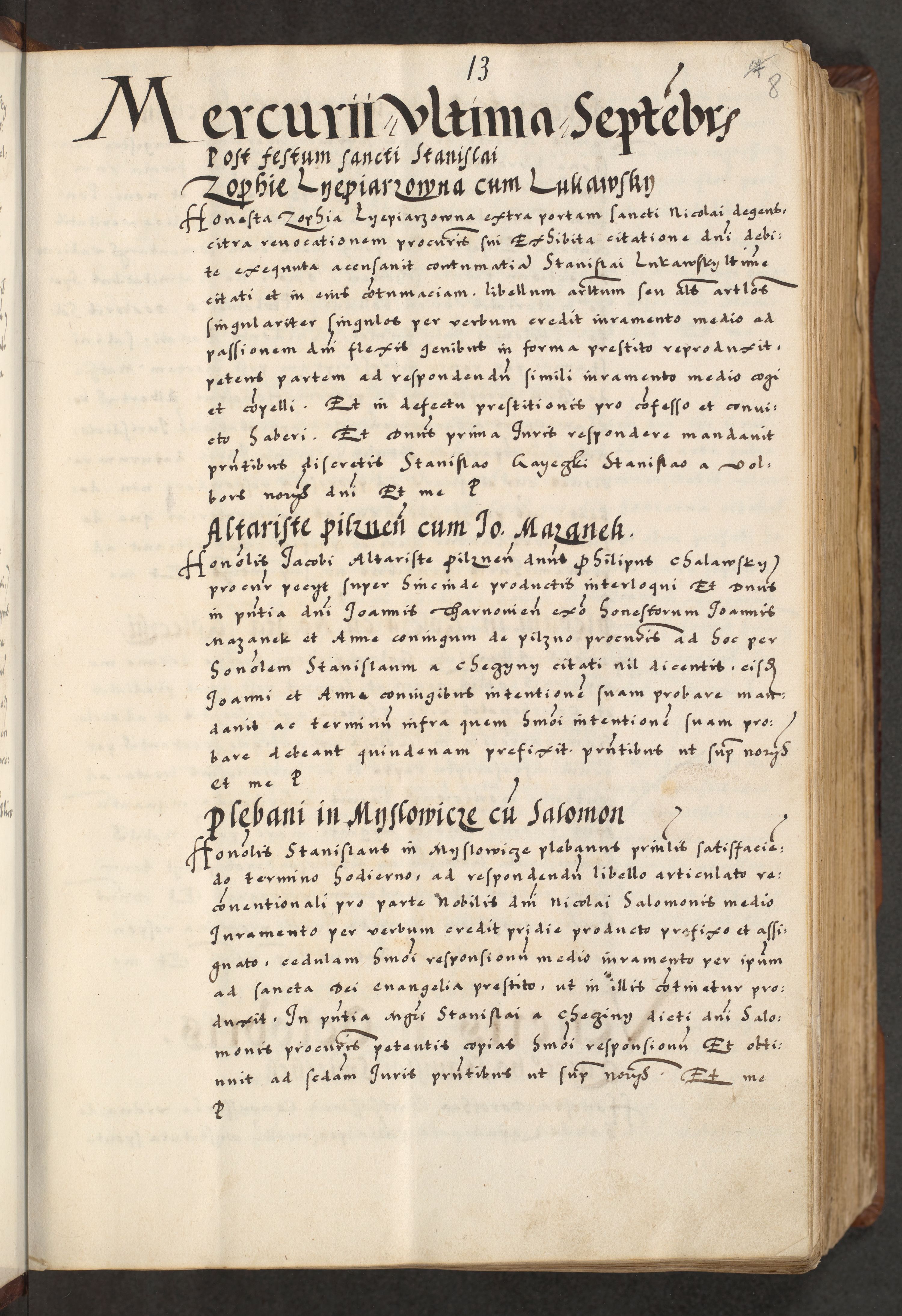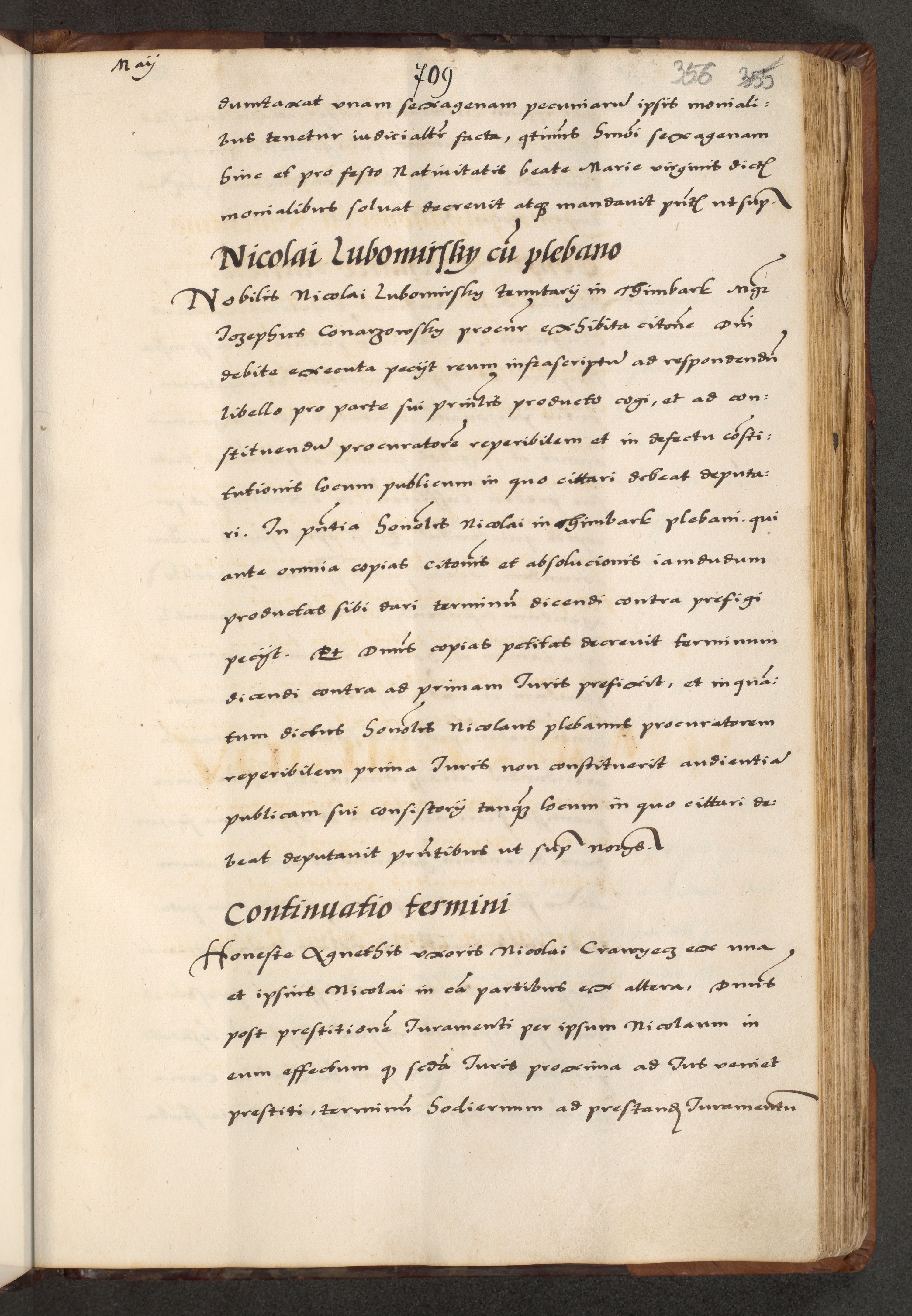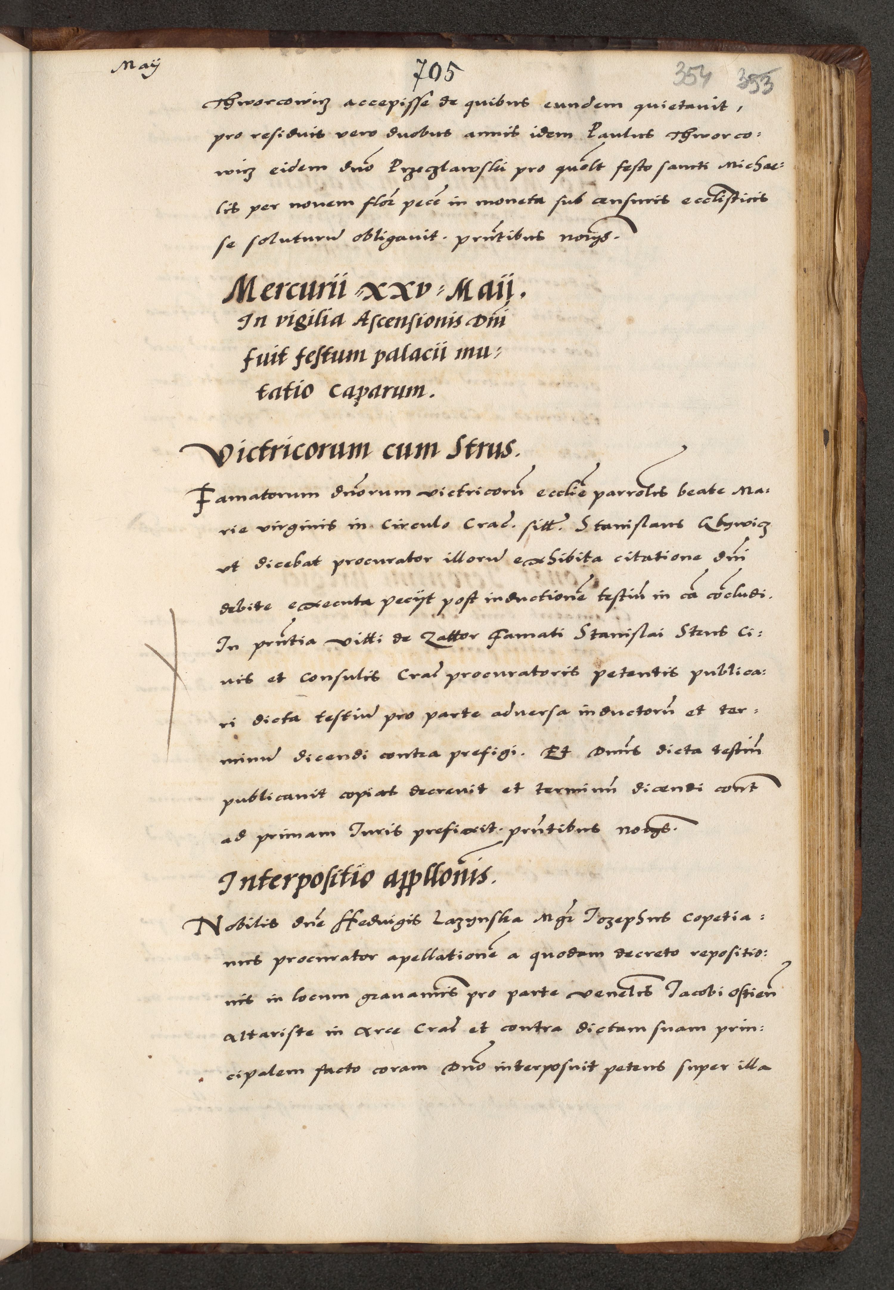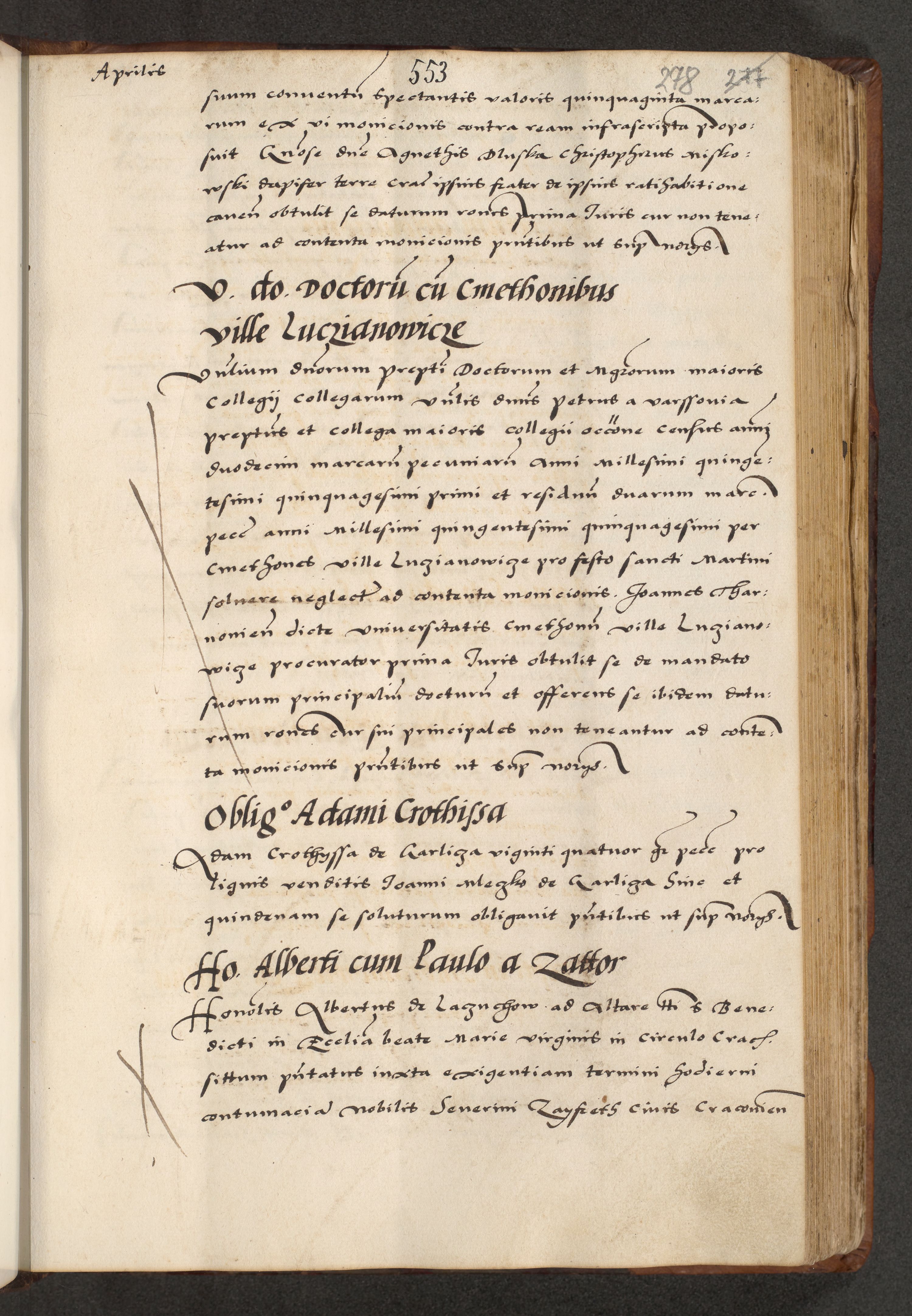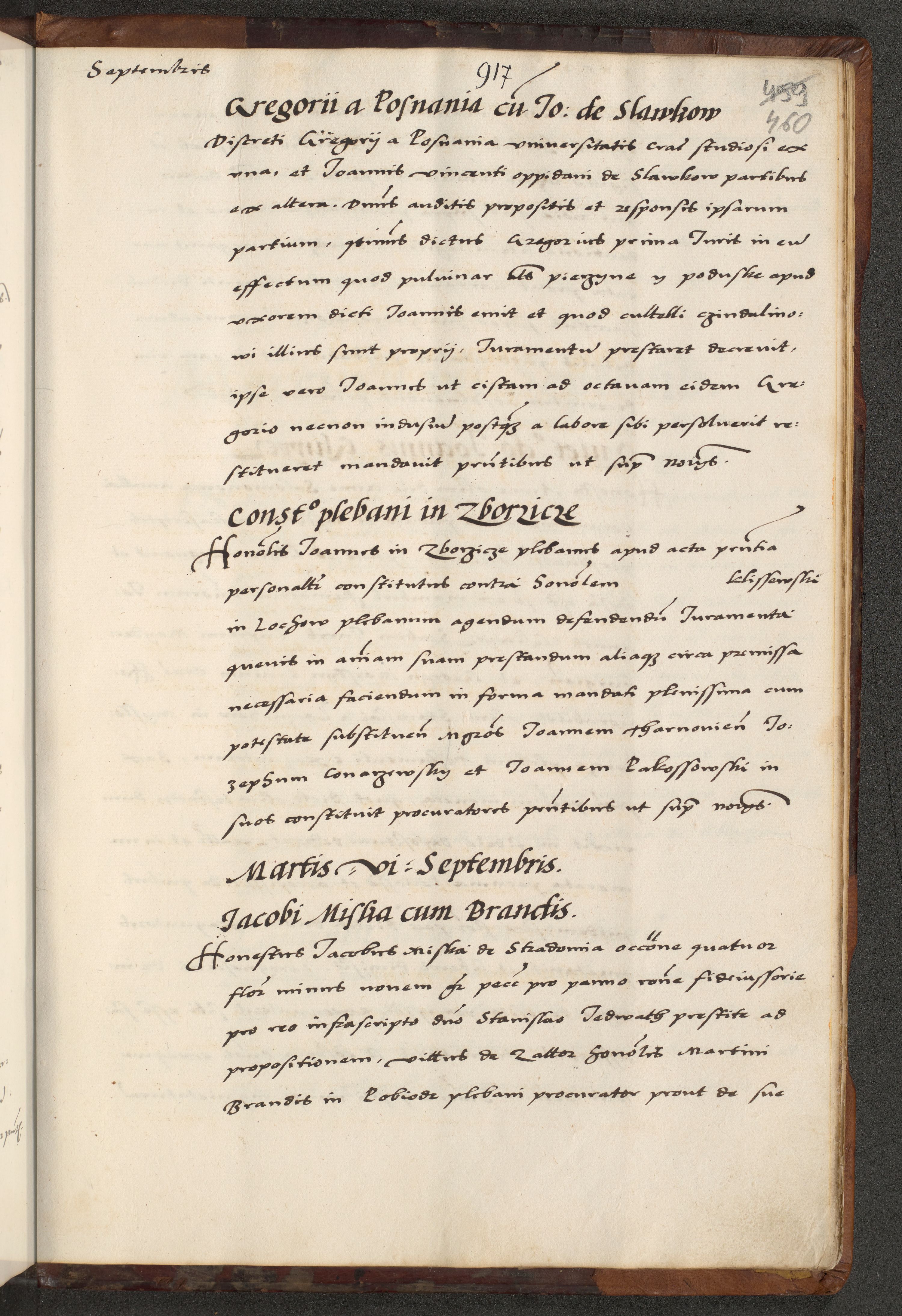[A]cta actorum causarum, sententiarum tam diffinitivarum quam interloquutoriarum, obligationum, constitutionum et contractuum coram reverendo patre domino Petro Porembski preposito Osvieczimensi, canonico et officiali generali Cracoviensi de anno Domini millesimo quingentesimo quinguagesimo primo, cuius indictio est nona, pontificatus sanctissimi in Christo patris et domini nostri domini Juliii divina providencia pape tercii, anno secundo, a die et mense infrascriptis feliciter continiantur