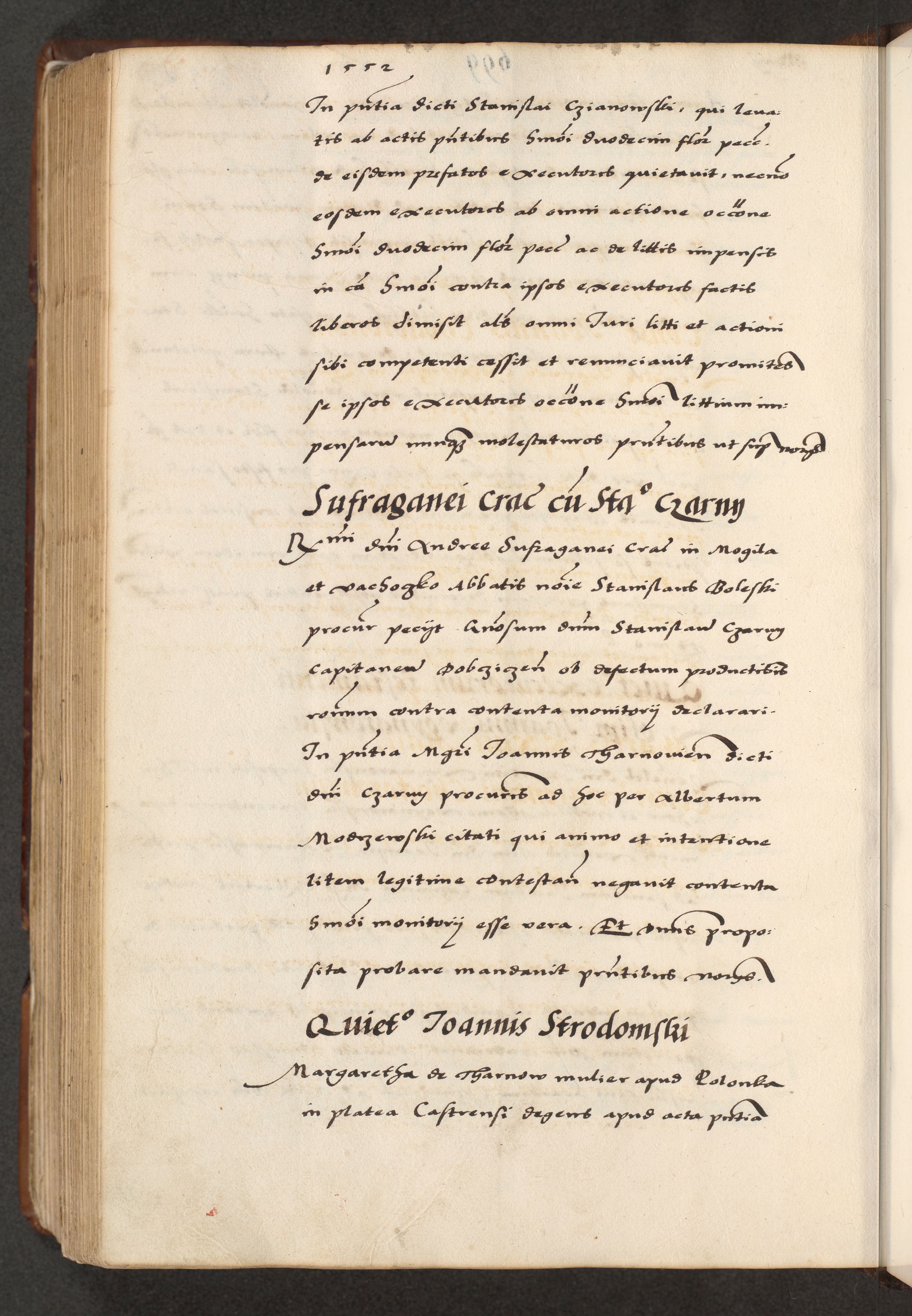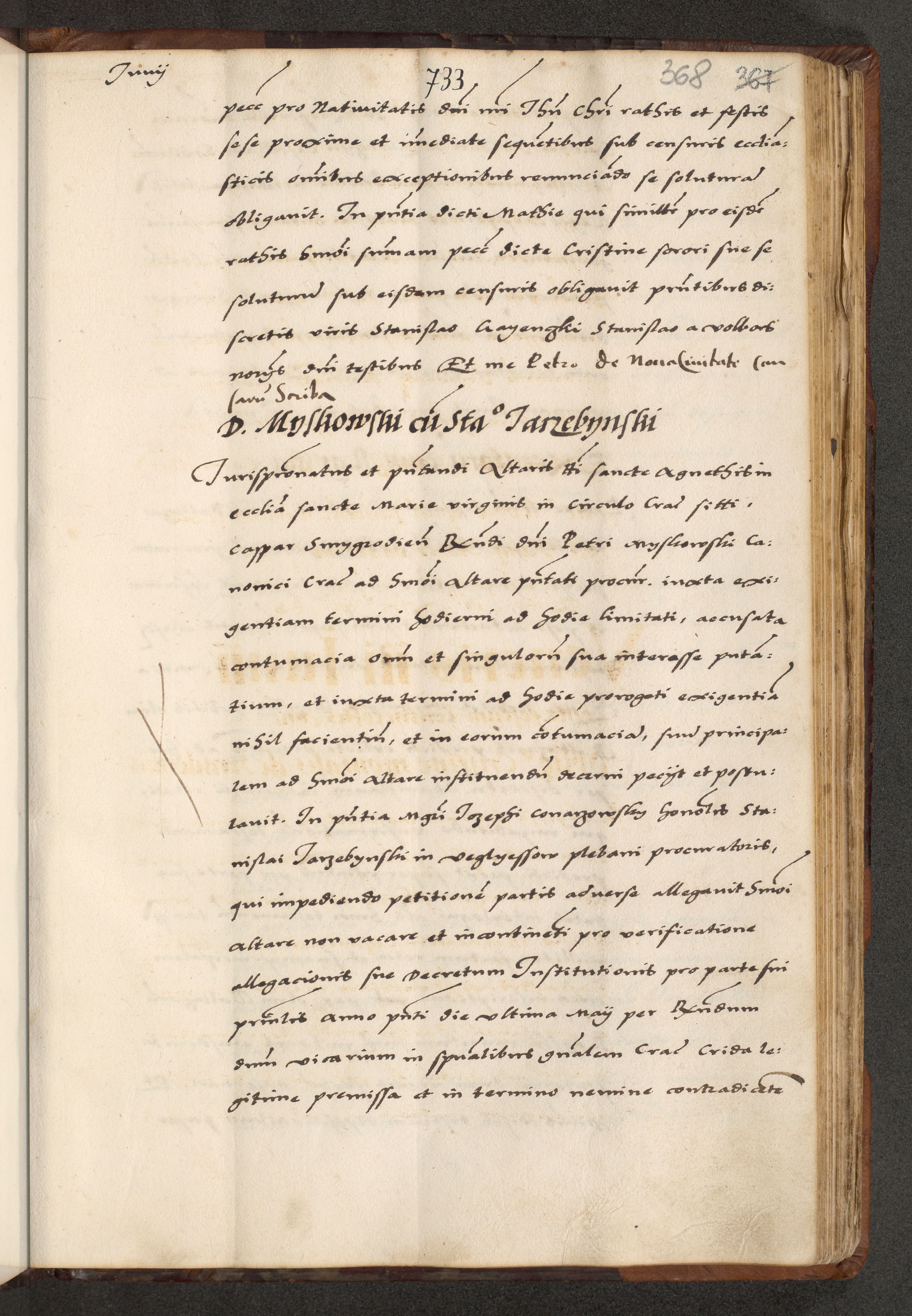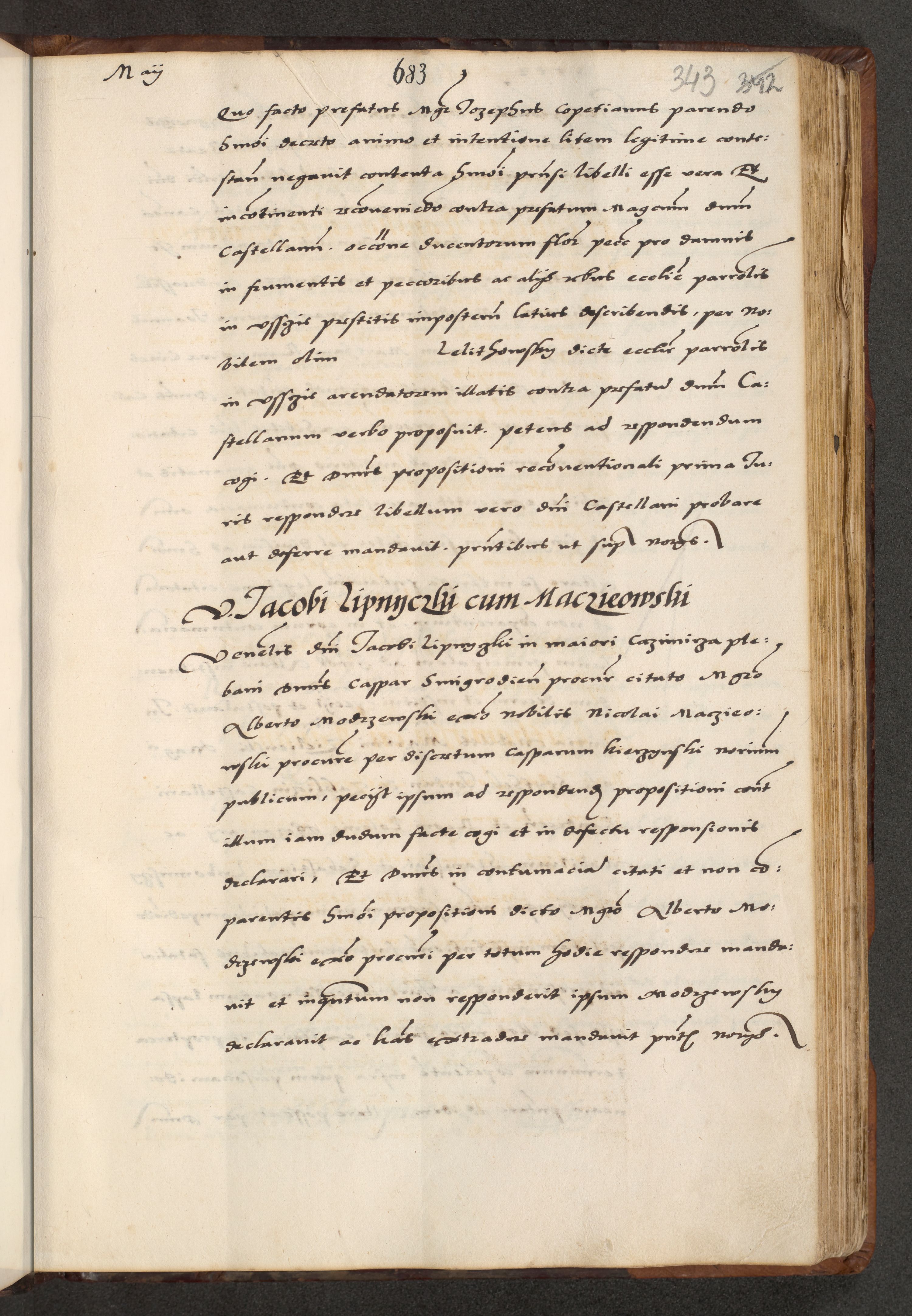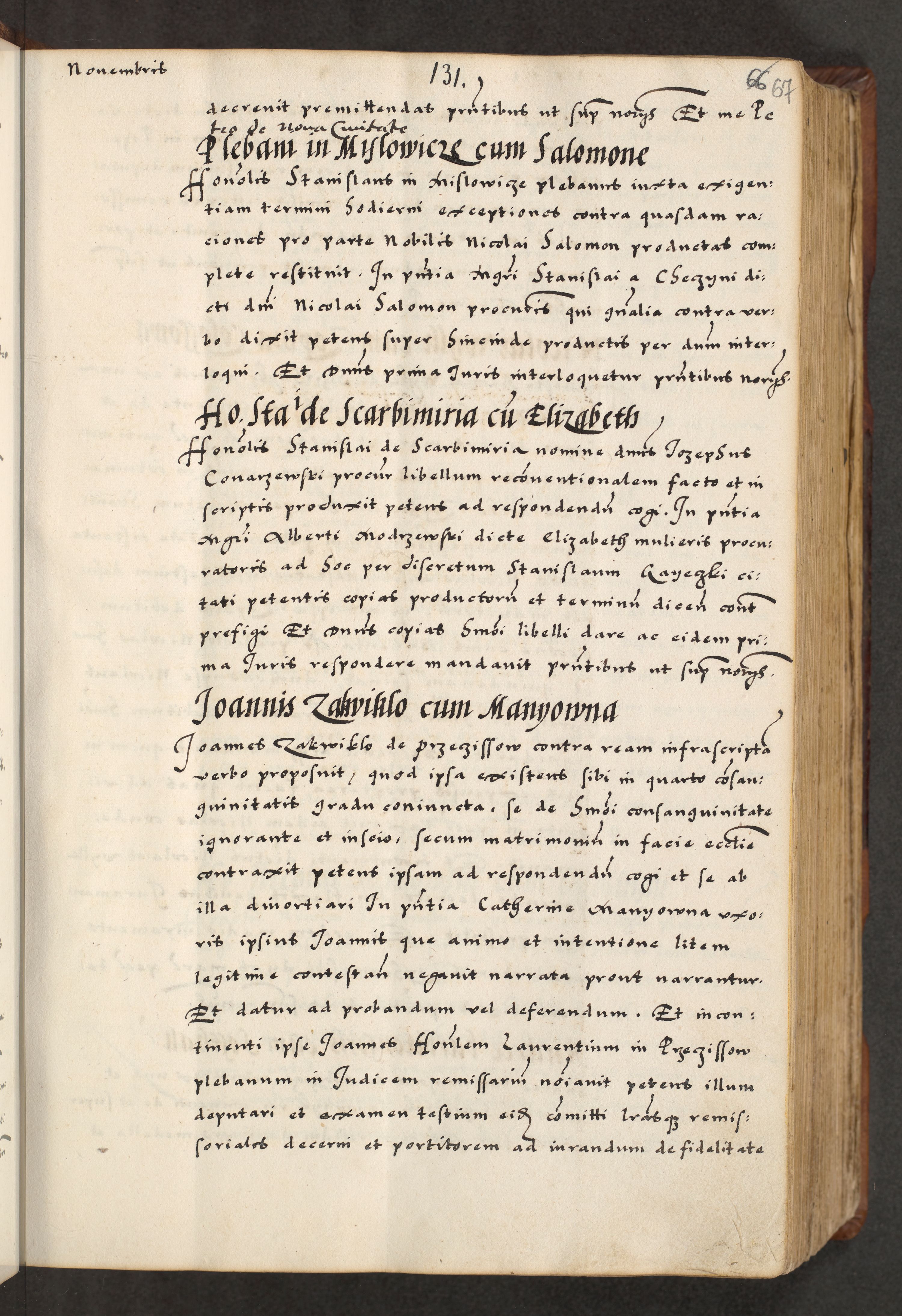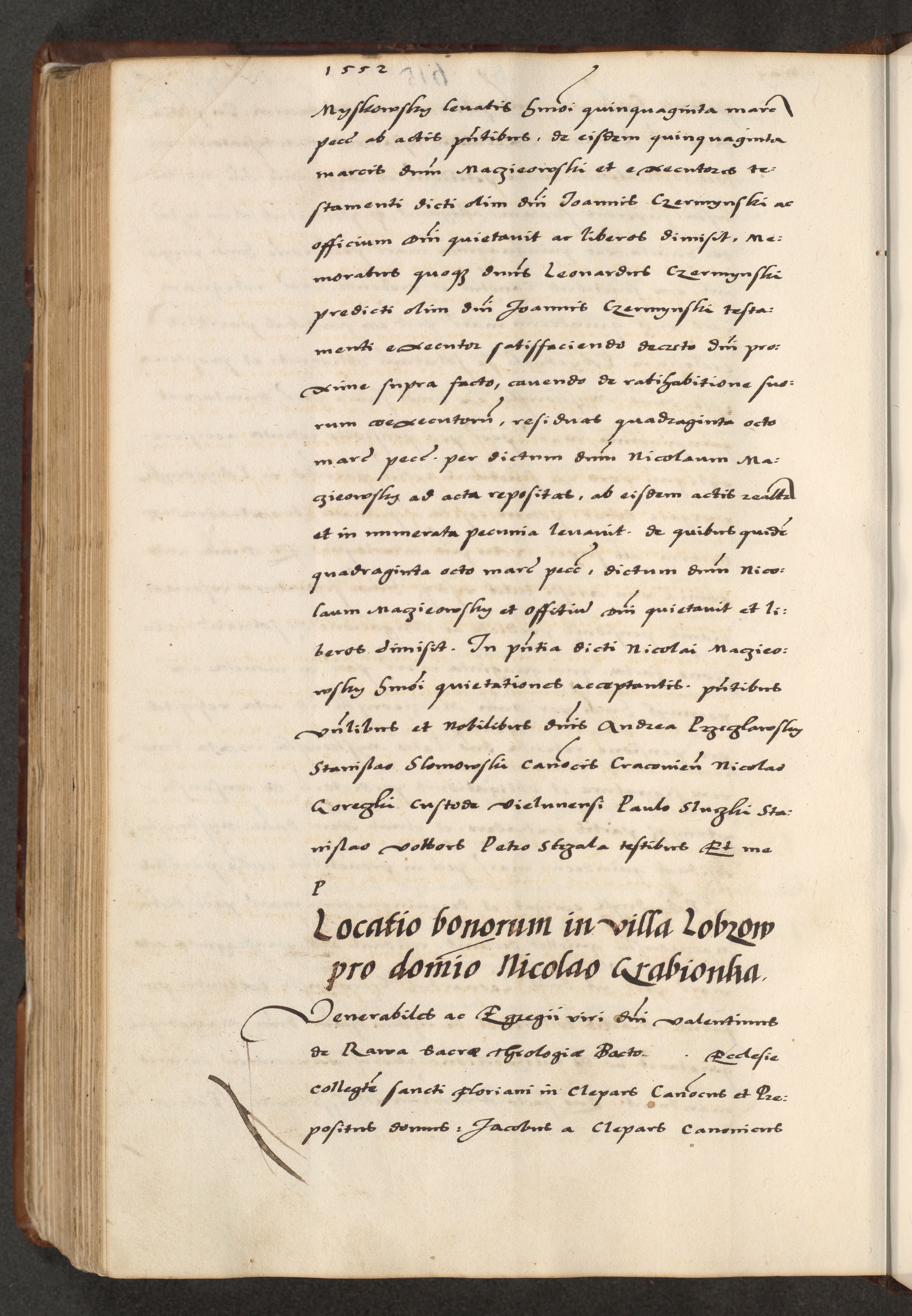 [A]cta actorum causarum, sententiarum tam diffinitivarum quam interloquutoriarum, obligationum, constitutionum et contractuum coram reverendo patre domino Petro Porembski preposito Osvieczimensi, canonico et officiali generali Cracoviensi de anno Domini millesimo quingentesimo quinguagesimo primo, cuius indictio est nona, pontificatus sanctissimi in Christo patris et domini nostri domini Juliii divina providencia pape tercii, anno secundo, a die et mense infrascriptis feliciter continiantur