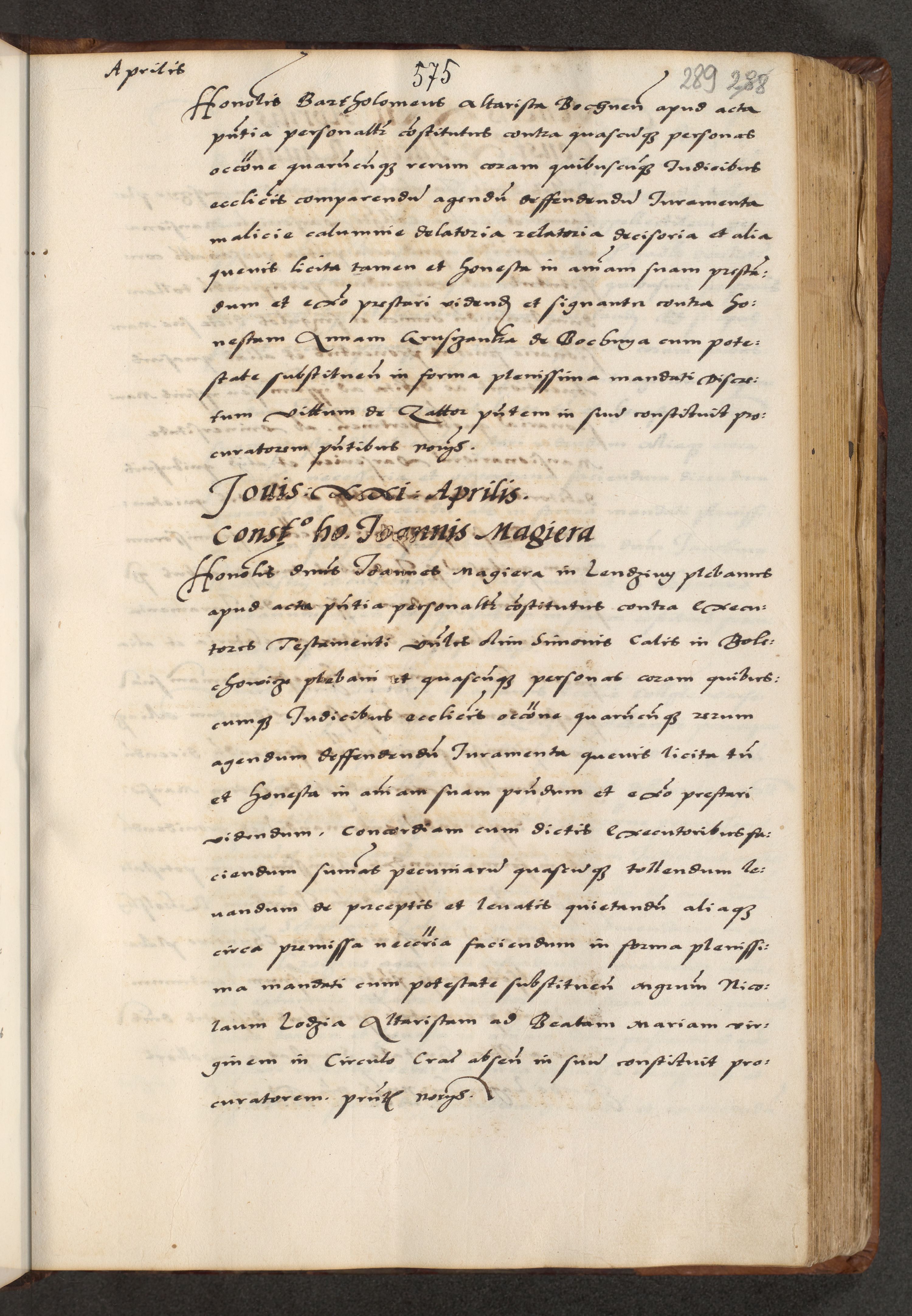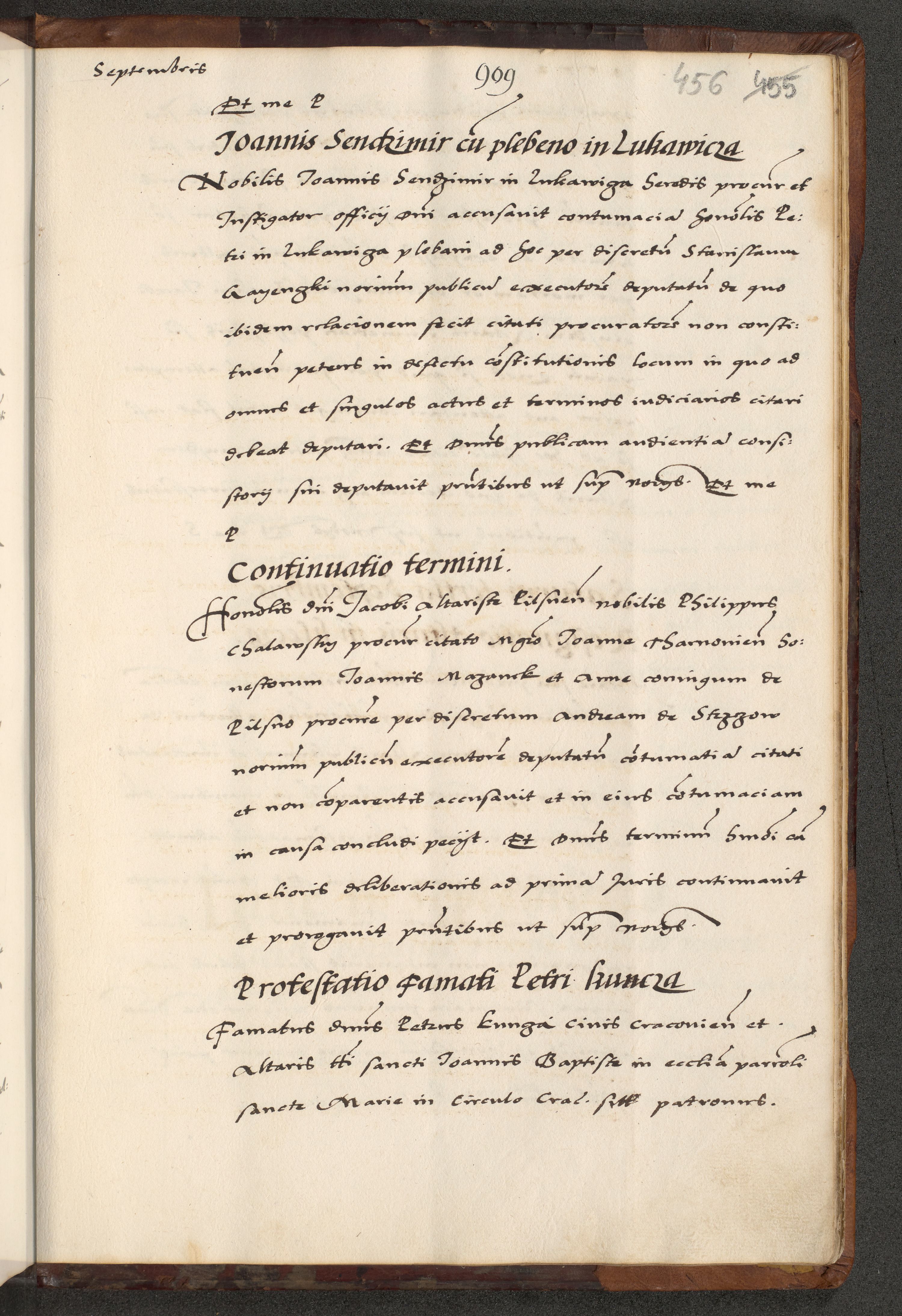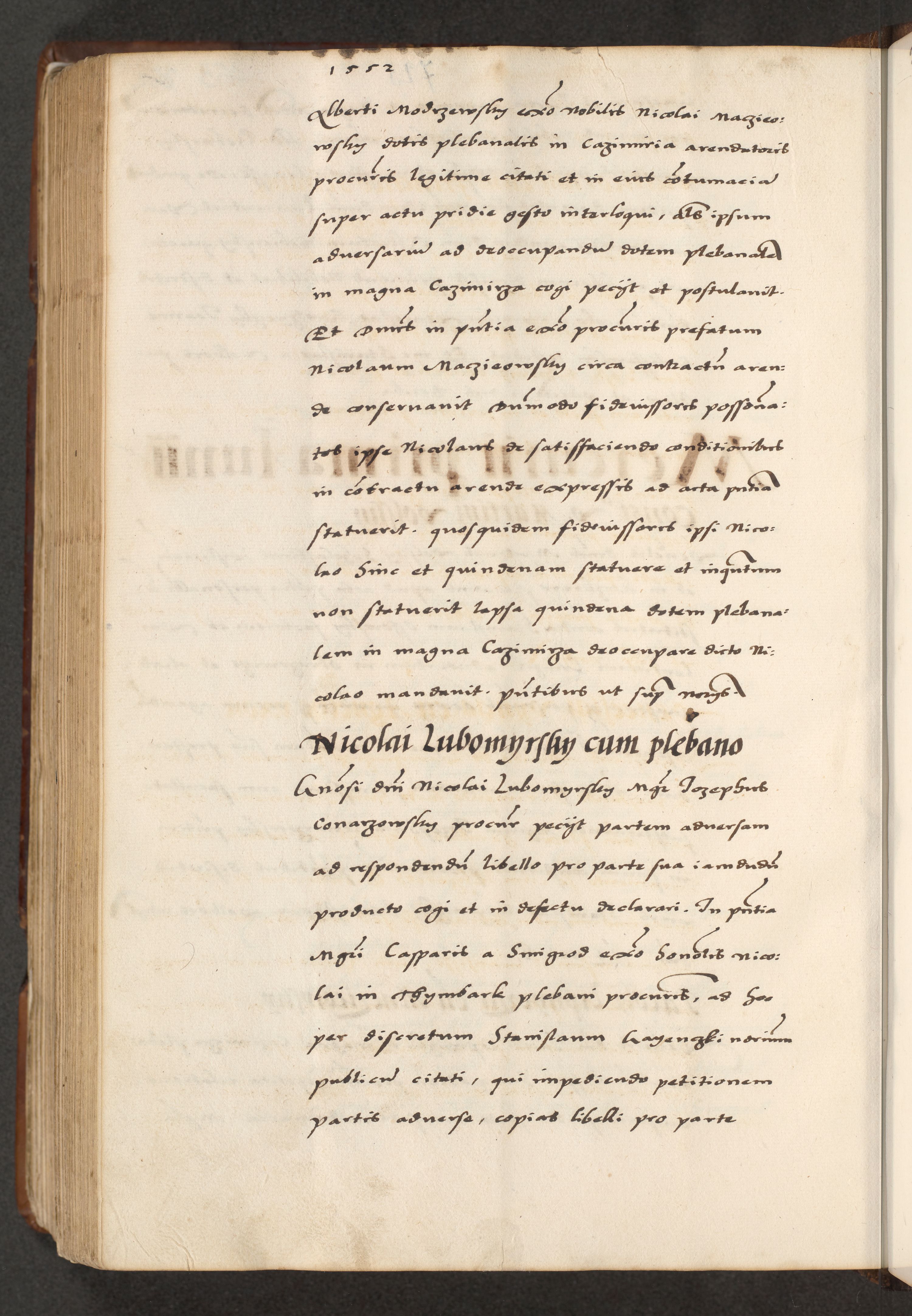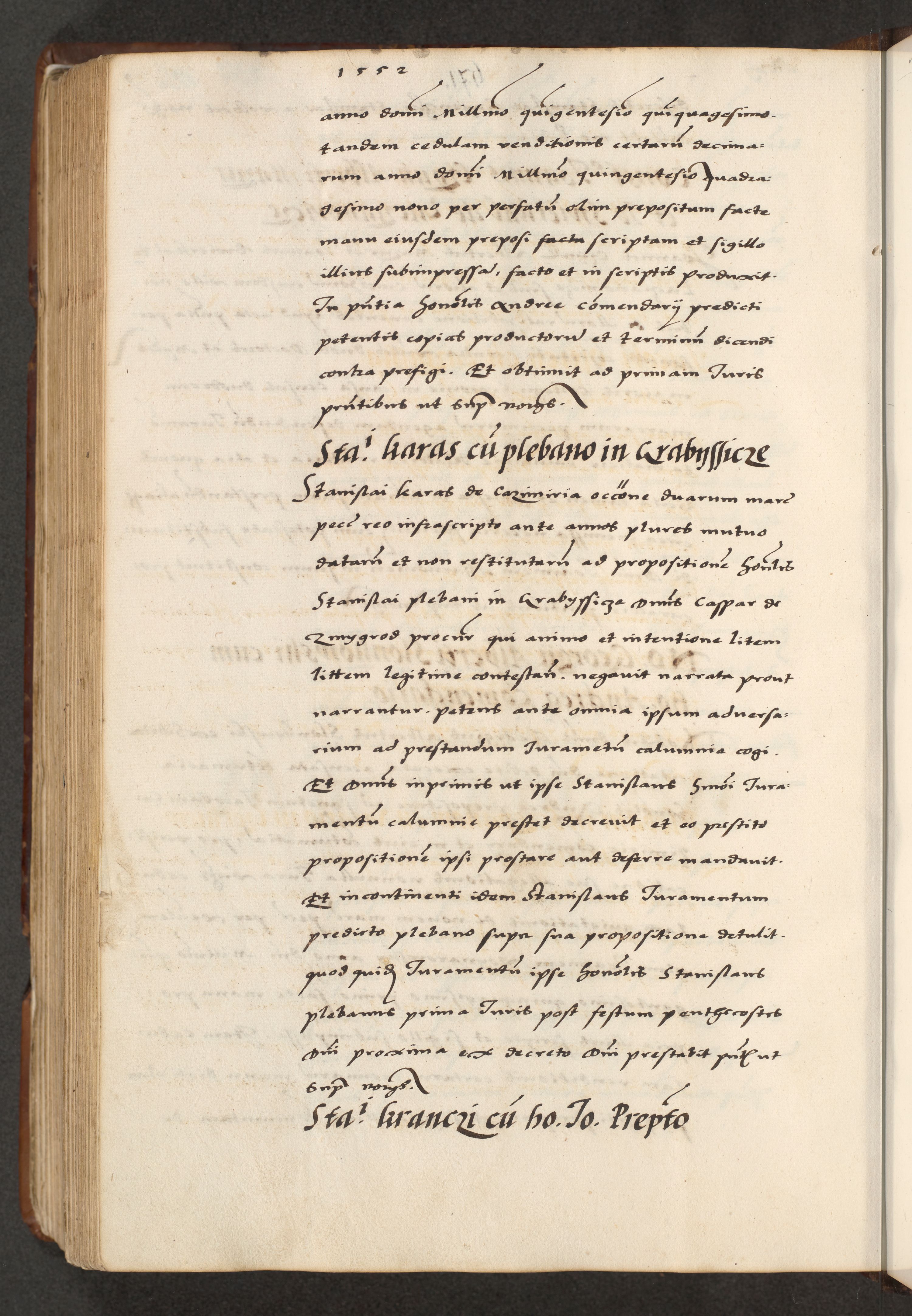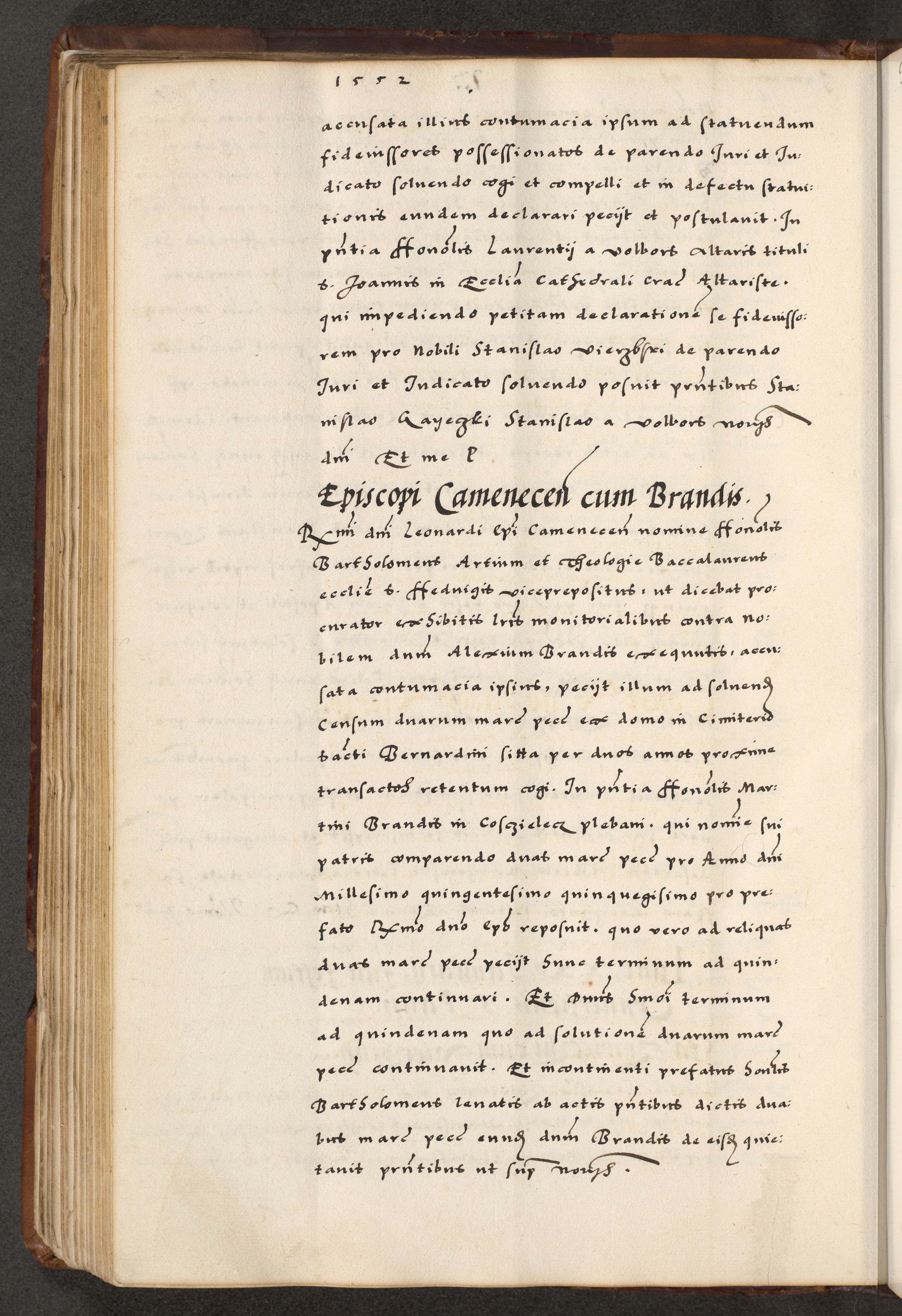 [A]cta actorum causarum, sententiarum tam diffinitivarum quam interloquutoriarum, obligationum, constitutionum et contractuum coram reverendo patre domino Petro Porembski preposito Osvieczimensi, canonico et officiali generali Cracoviensi de anno Domini millesimo quingentesimo quinguagesimo primo, cuius indictio est nona, pontificatus sanctissimi in Christo patris et domini nostri domini Juliii divina providencia pape tercii, anno secundo, a die et mense infrascriptis feliciter continiantur