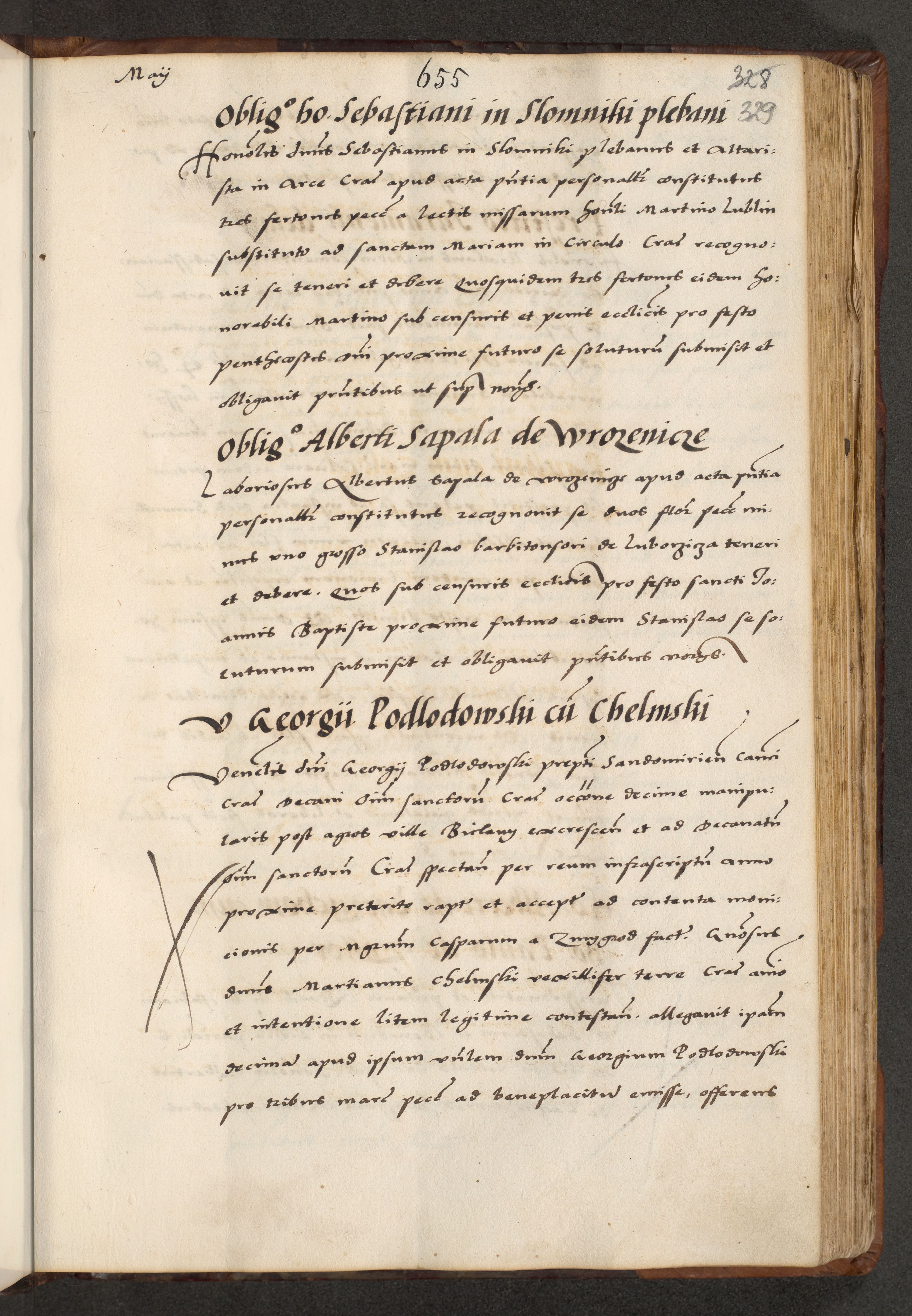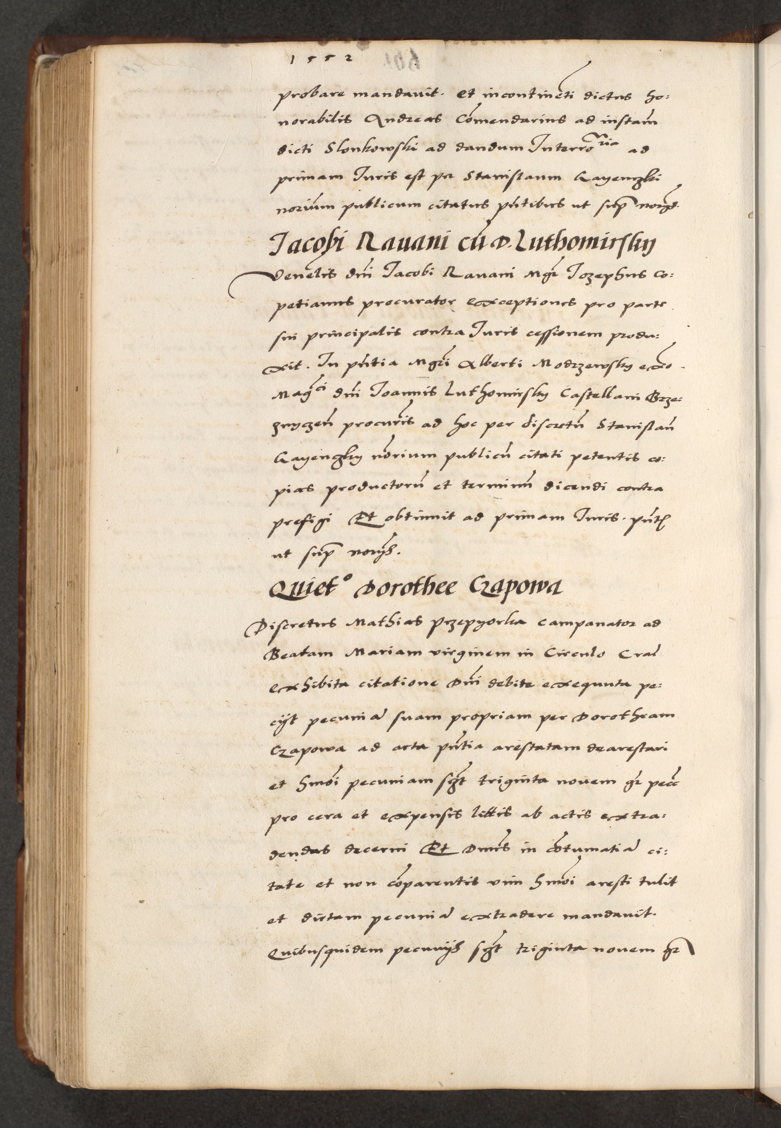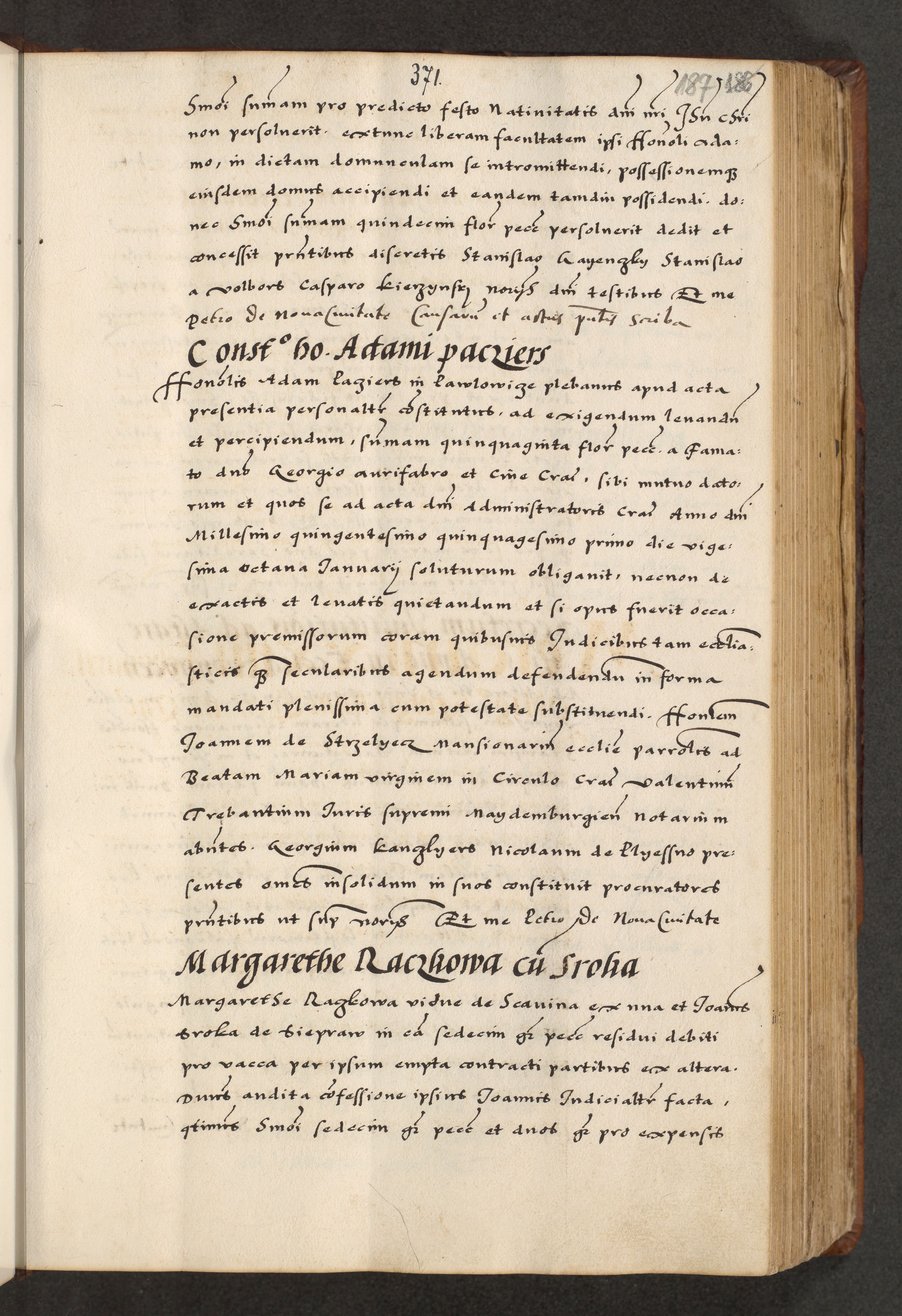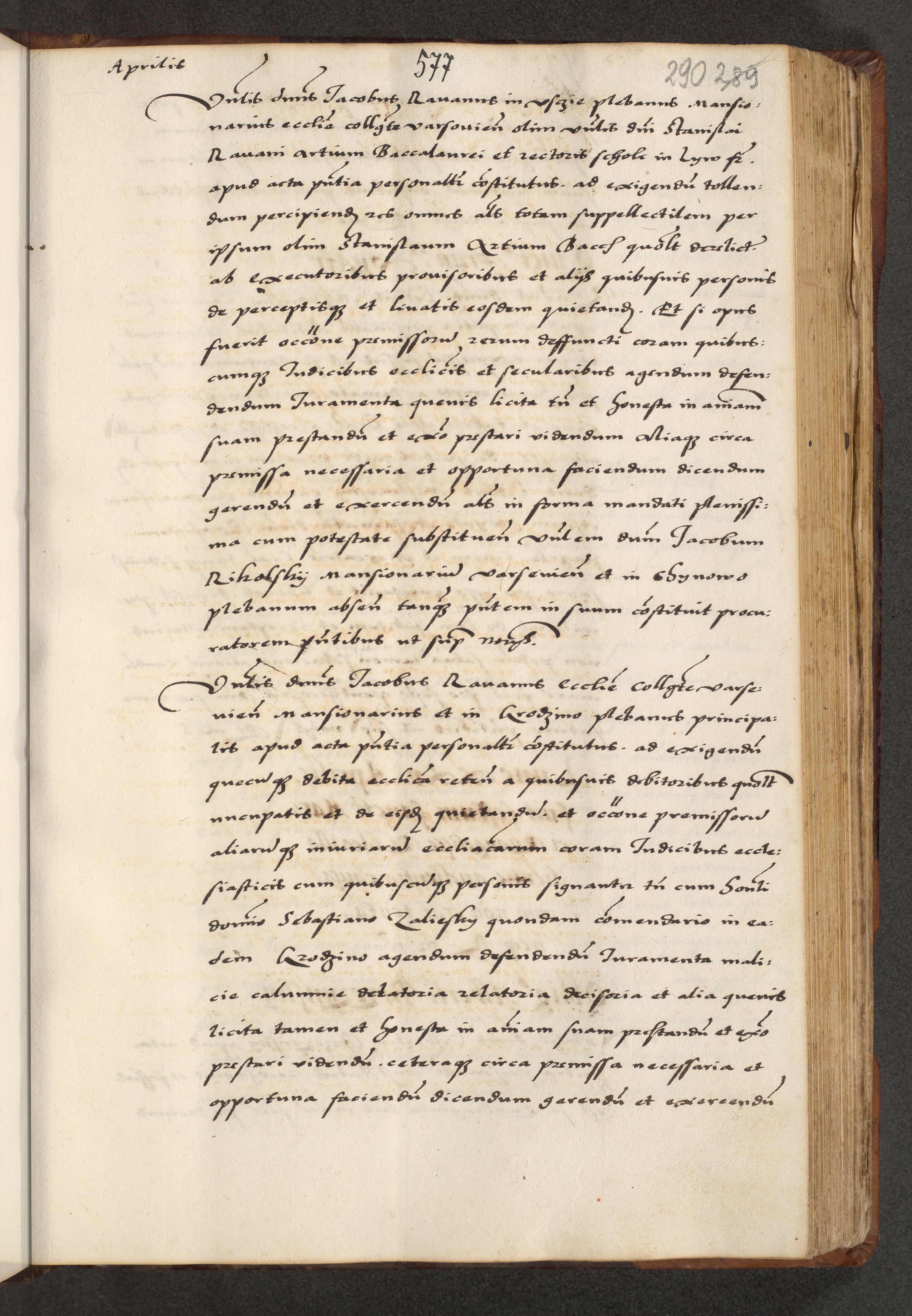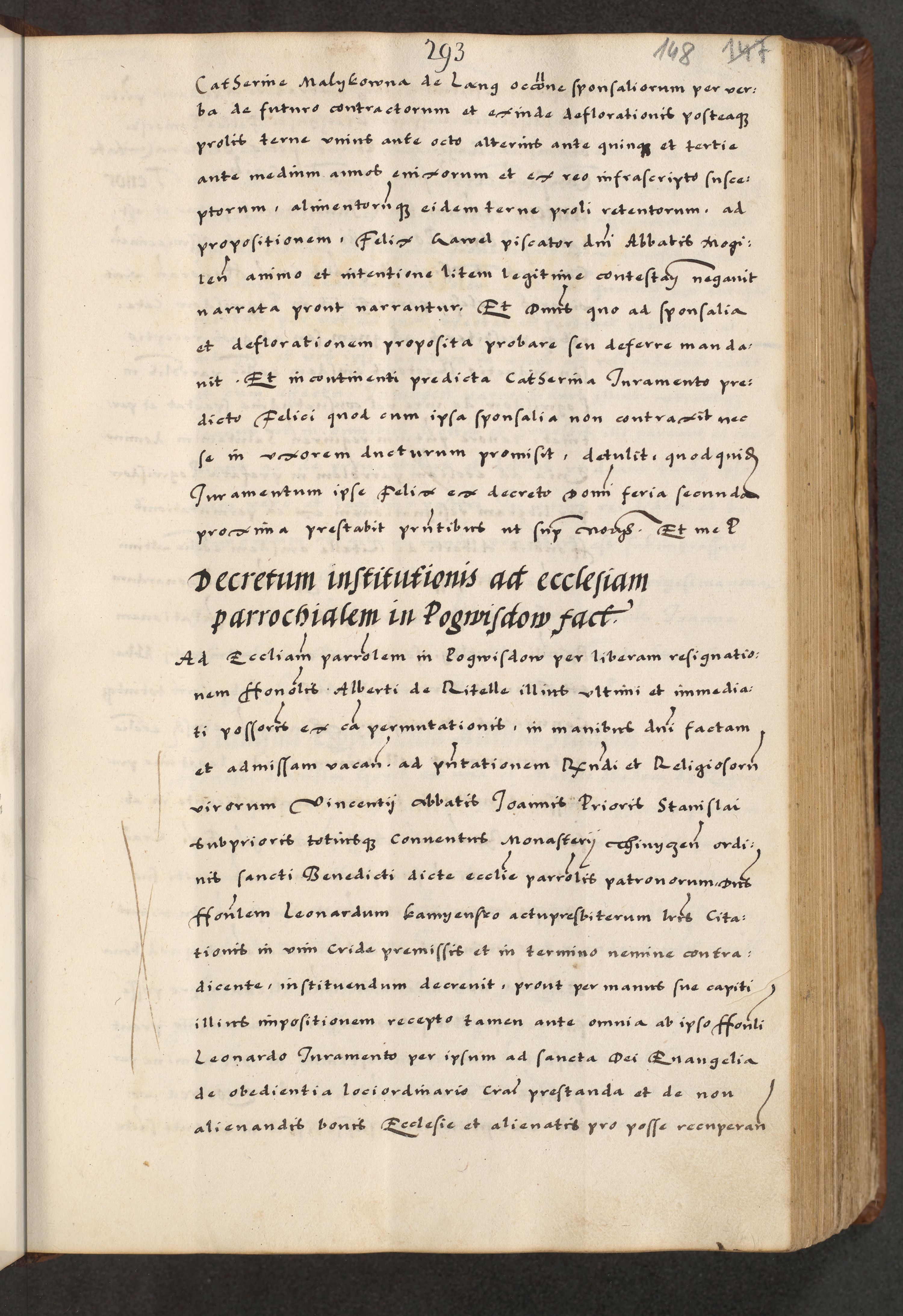 [A]cta actorum causarum, sententiarum tam diffinitivarum quam interloquutoriarum, obligationum, constitutionum et contractuum coram reverendo patre domino Petro Porembski preposito Osvieczimensi, canonico et officiali generali Cracoviensi de anno Domini millesimo quingentesimo quinguagesimo primo, cuius indictio est nona, pontificatus sanctissimi in Christo patris et domini nostri domini Juliii divina providencia pape tercii, anno secundo, a die et mense infrascriptis feliciter continiantur