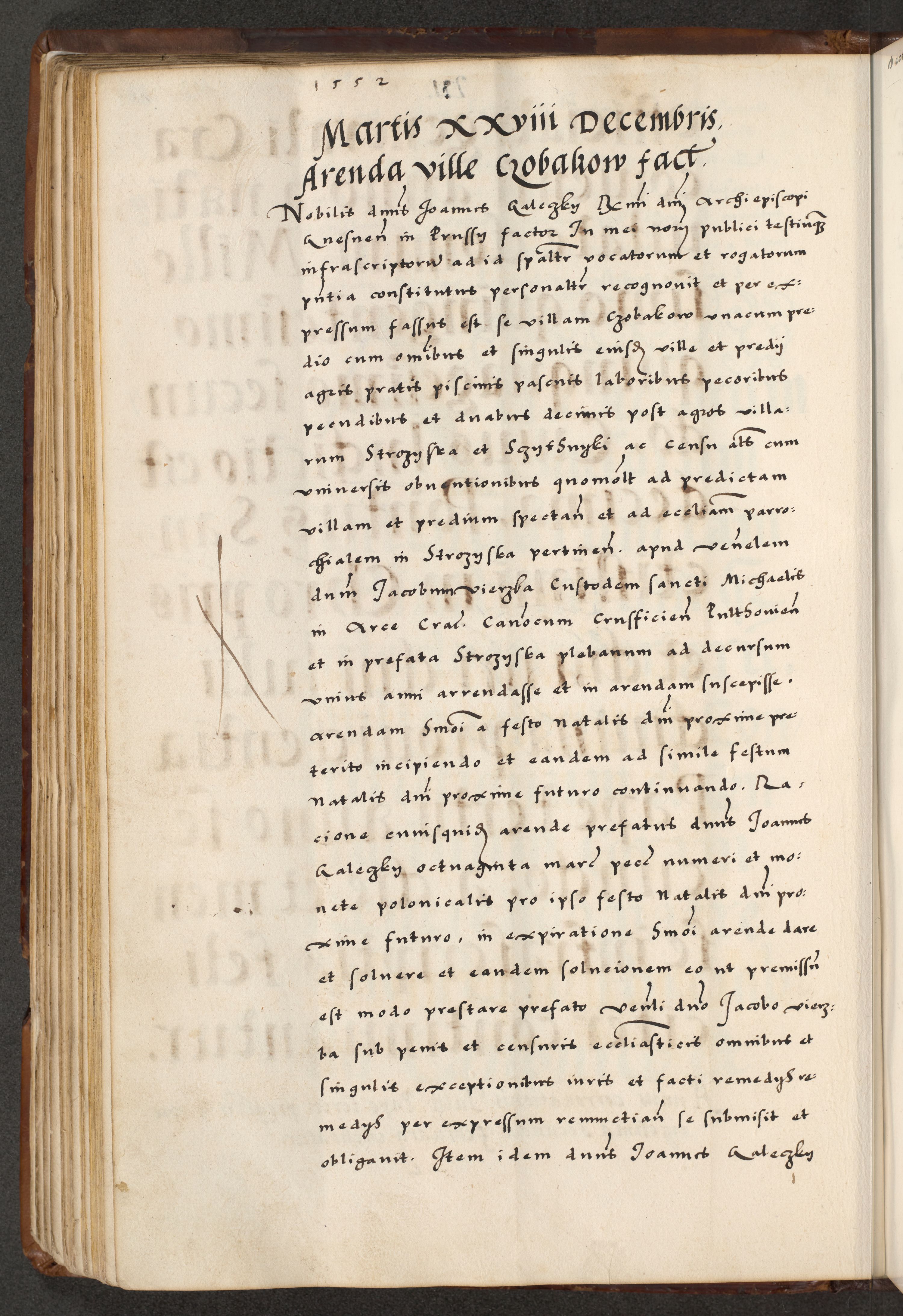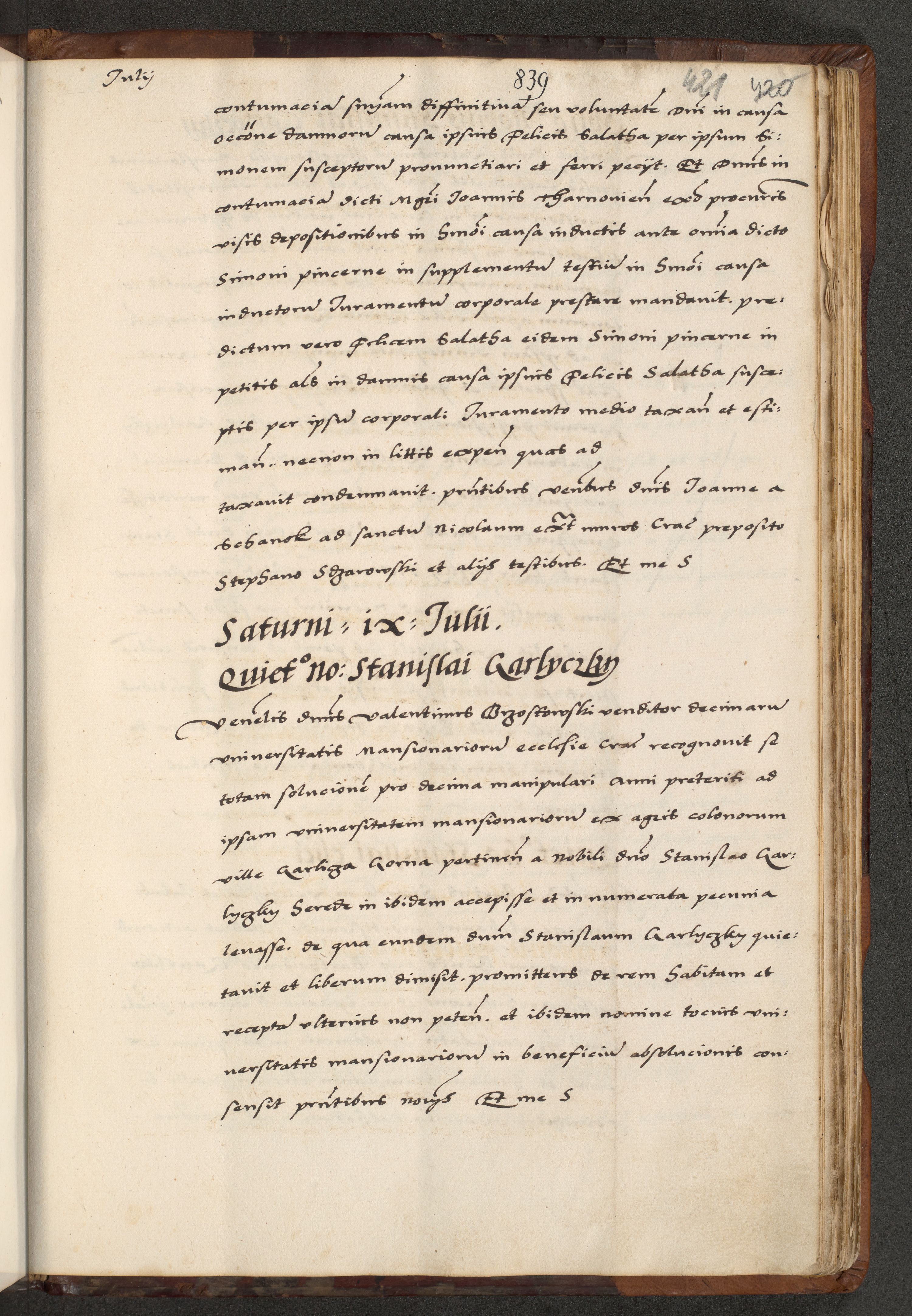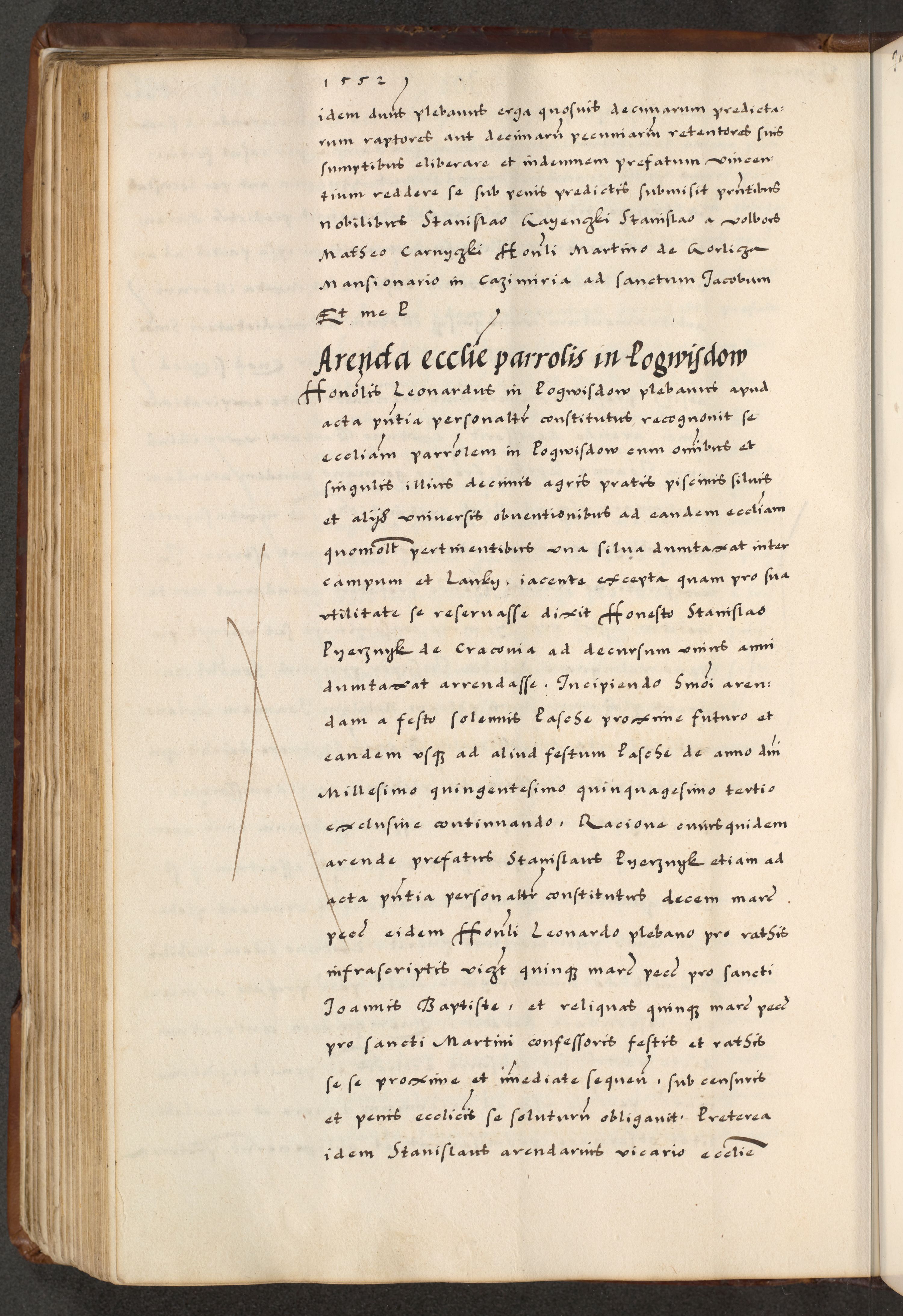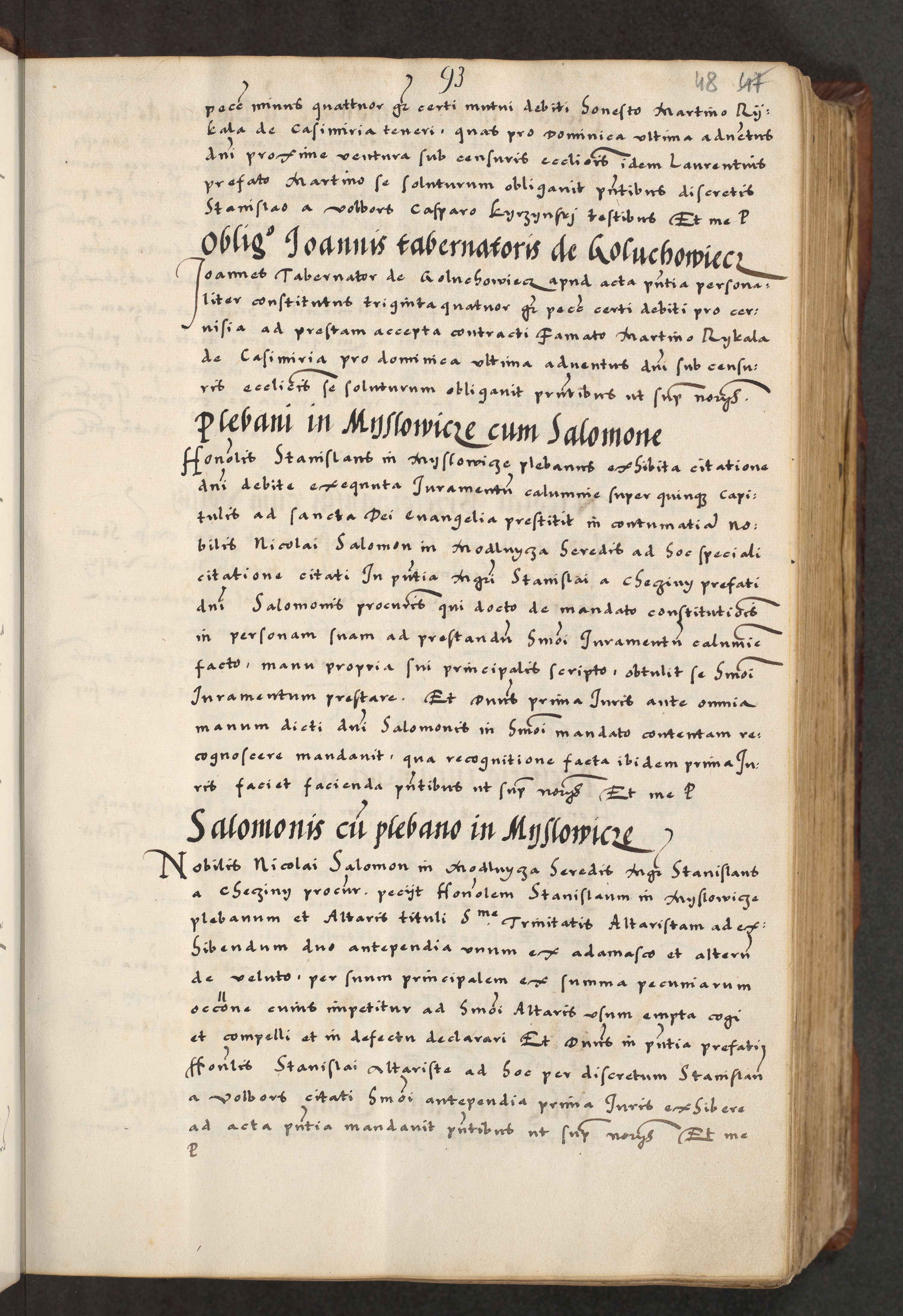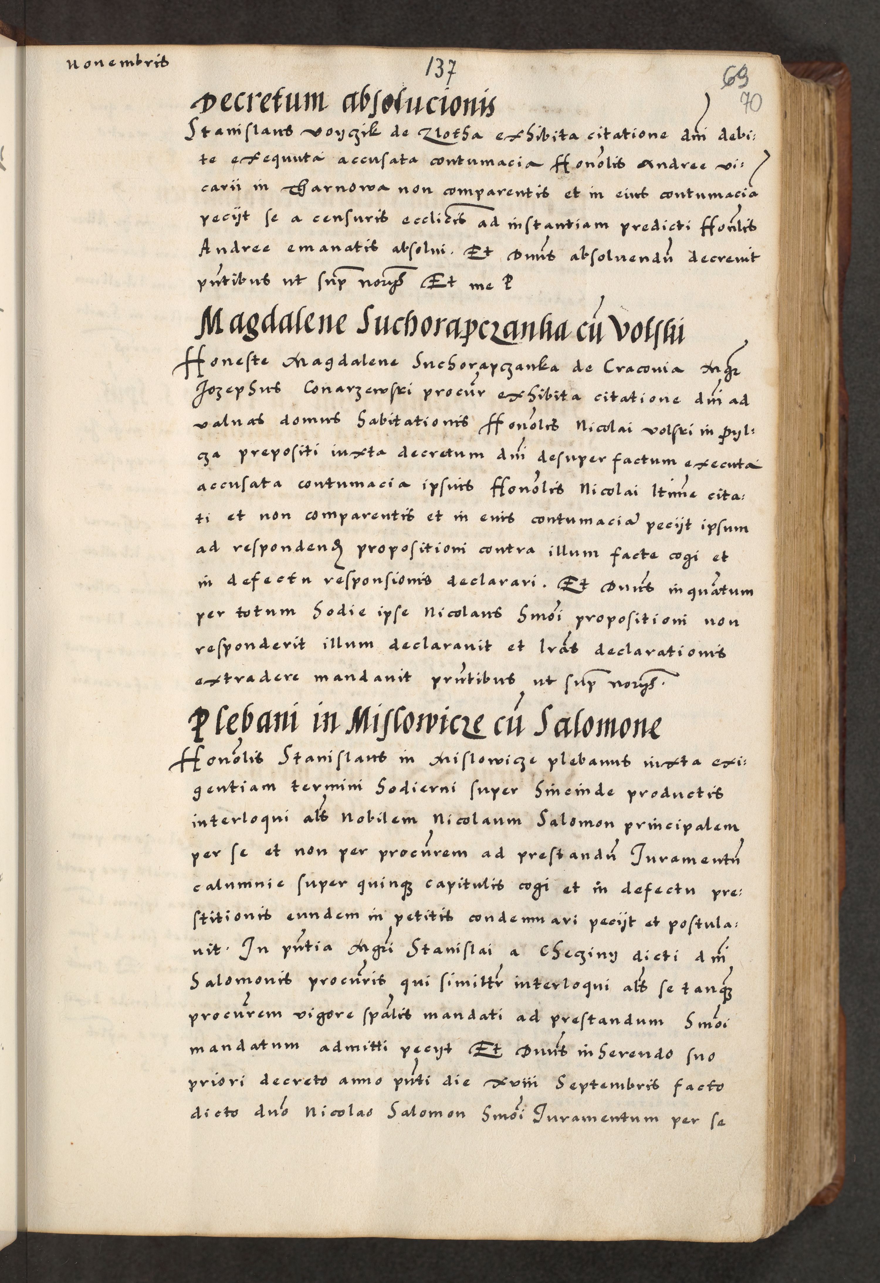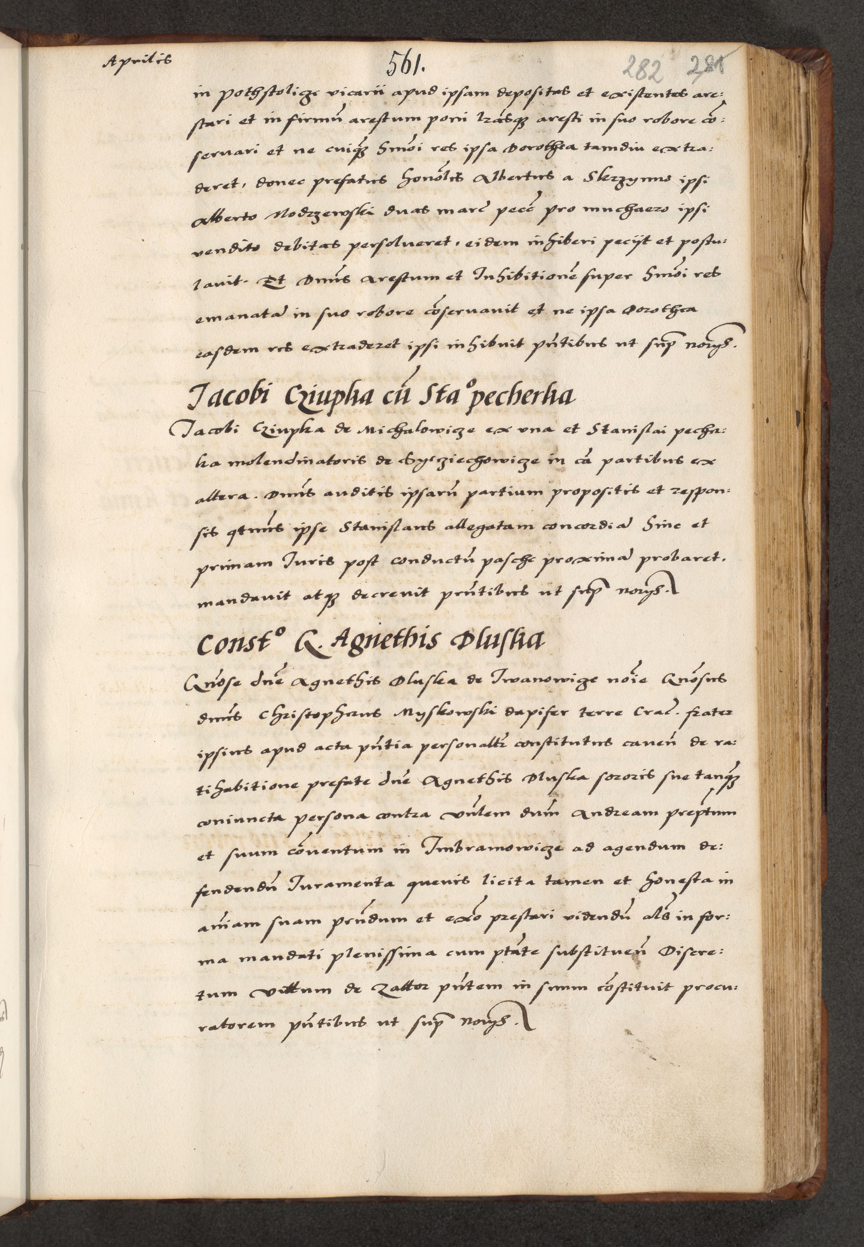 [A]cta actorum causarum, sententiarum tam diffinitivarum quam interloquutoriarum, obligationum, constitutionum et contractuum coram reverendo patre domino Petro Porembski preposito Osvieczimensi, canonico et officiali generali Cracoviensi de anno Domini millesimo quingentesimo quinguagesimo primo, cuius indictio est nona, pontificatus sanctissimi in Christo patris et domini nostri domini Juliii divina providencia pape tercii, anno secundo, a die et mense infrascriptis feliciter continiantur