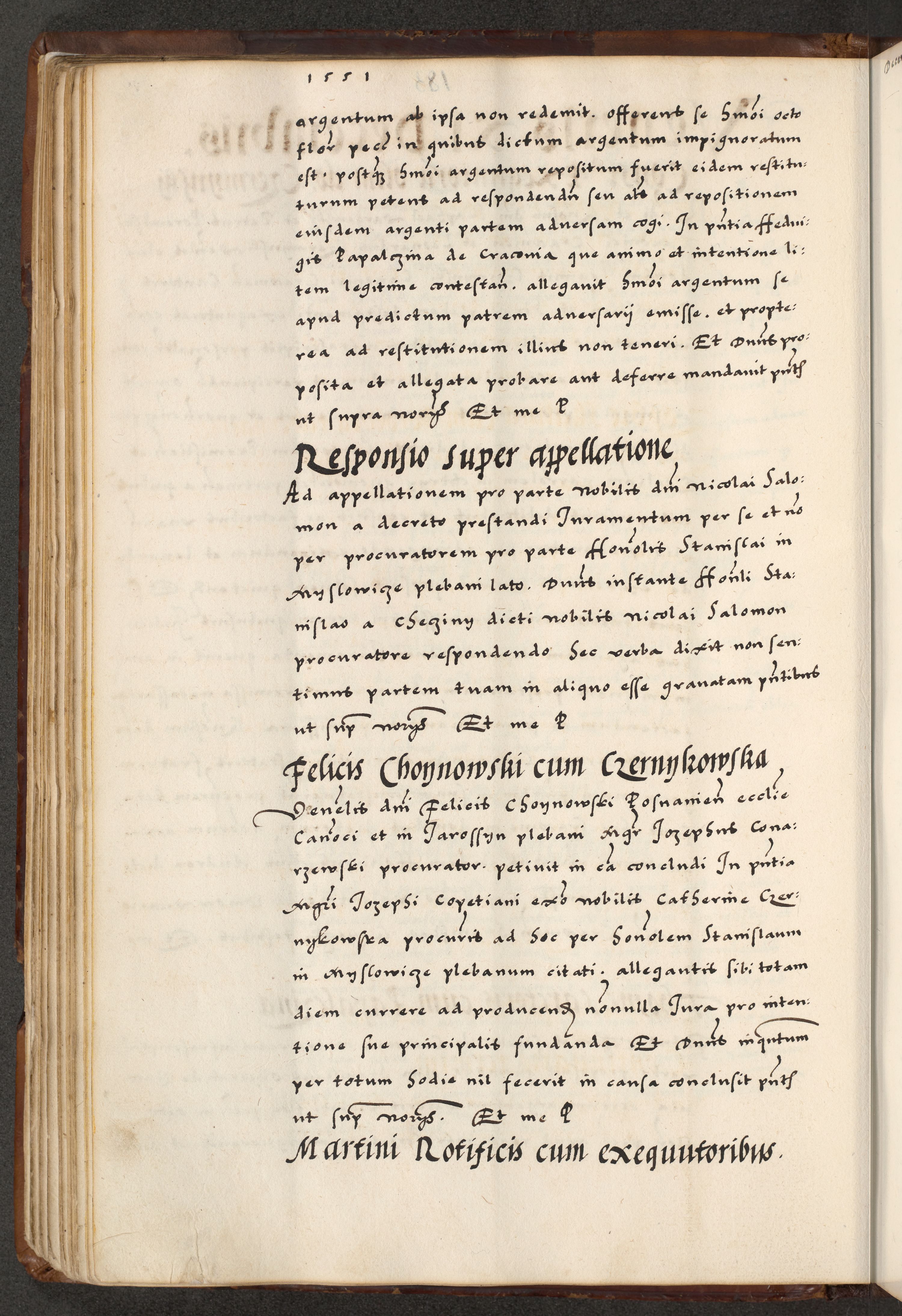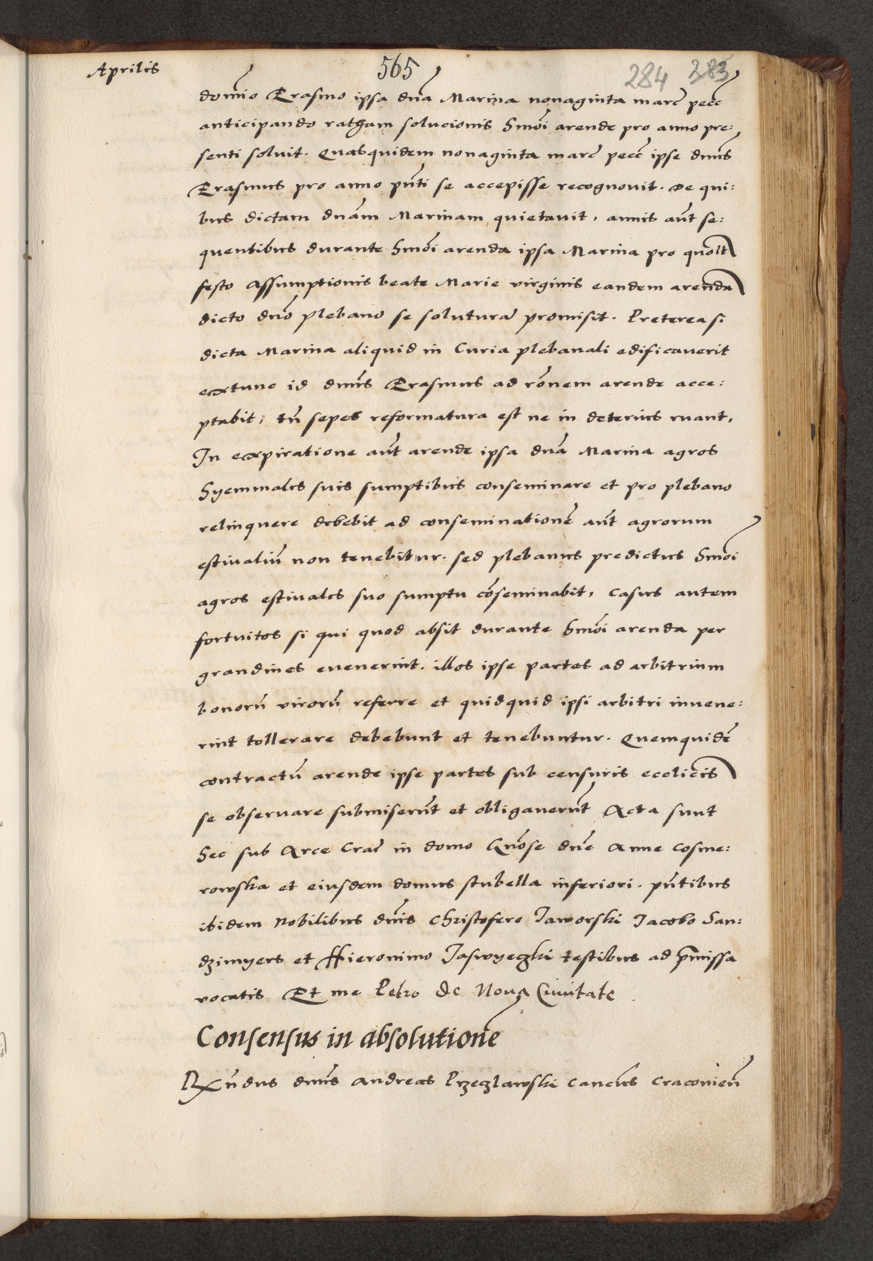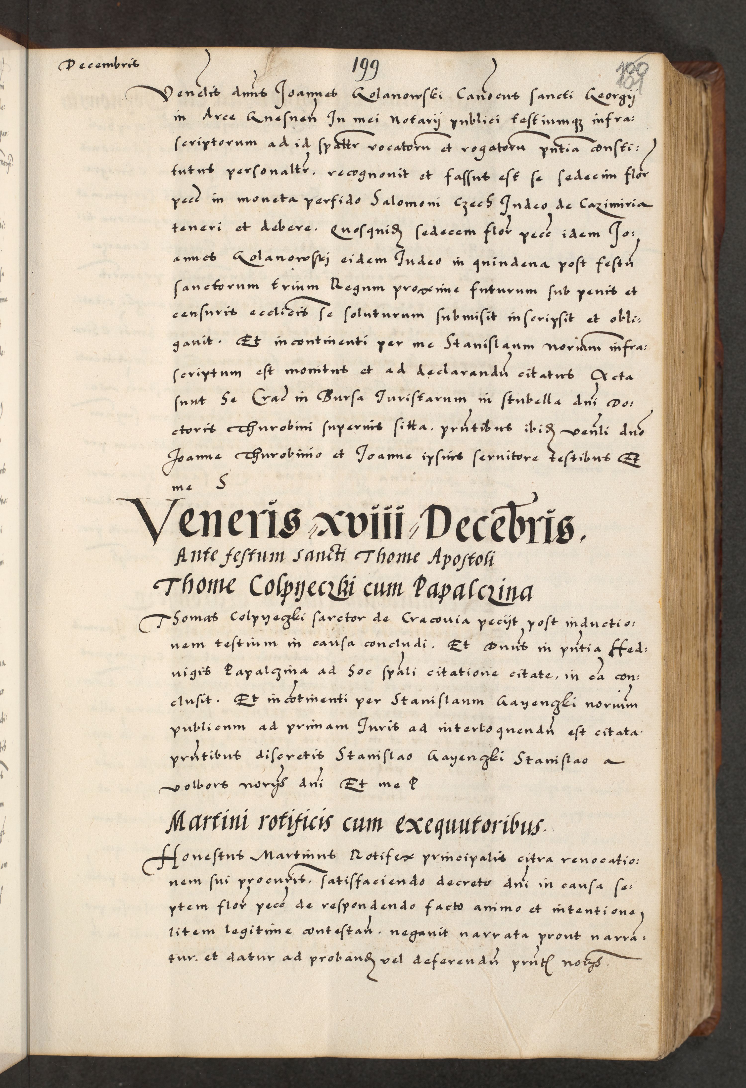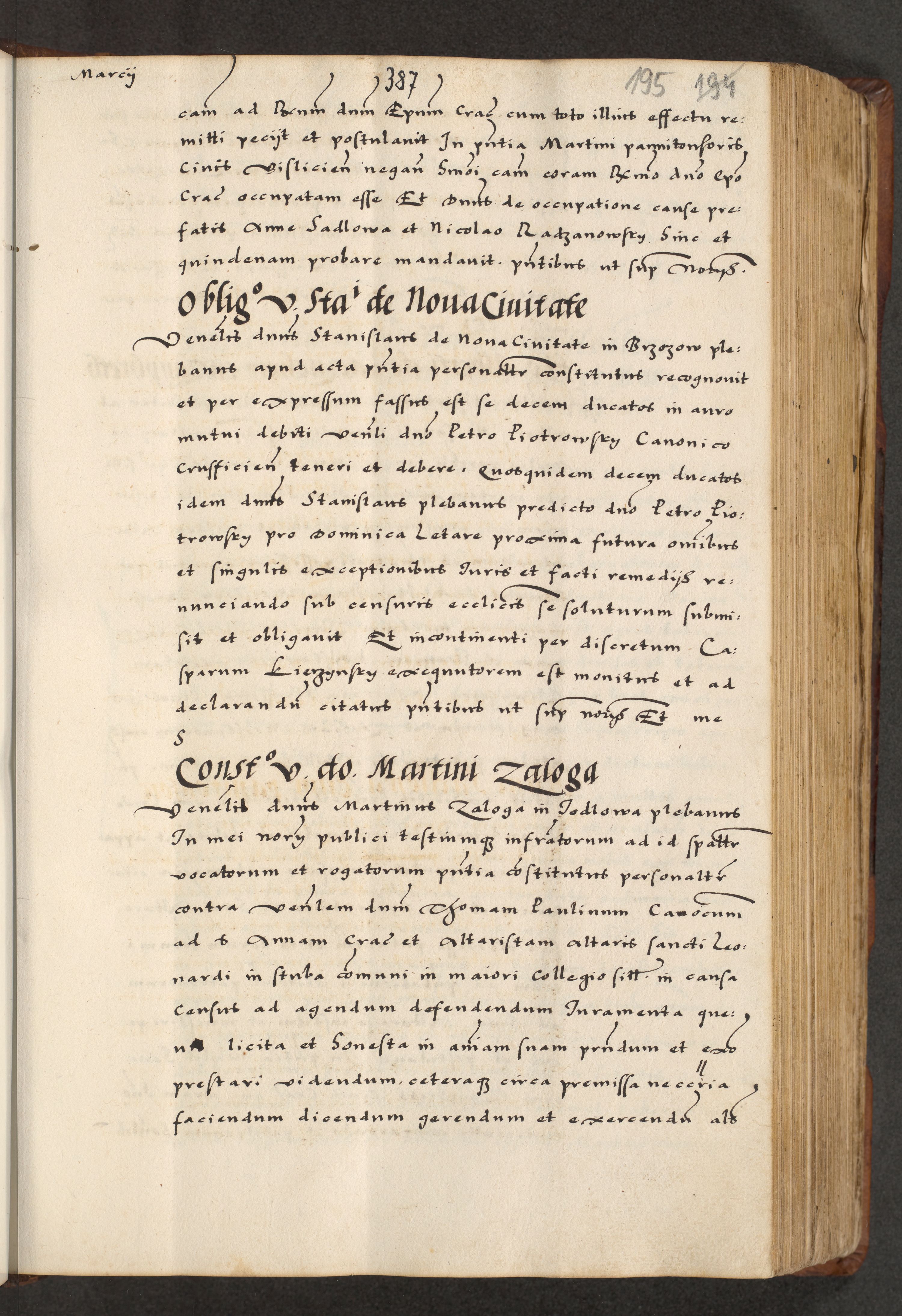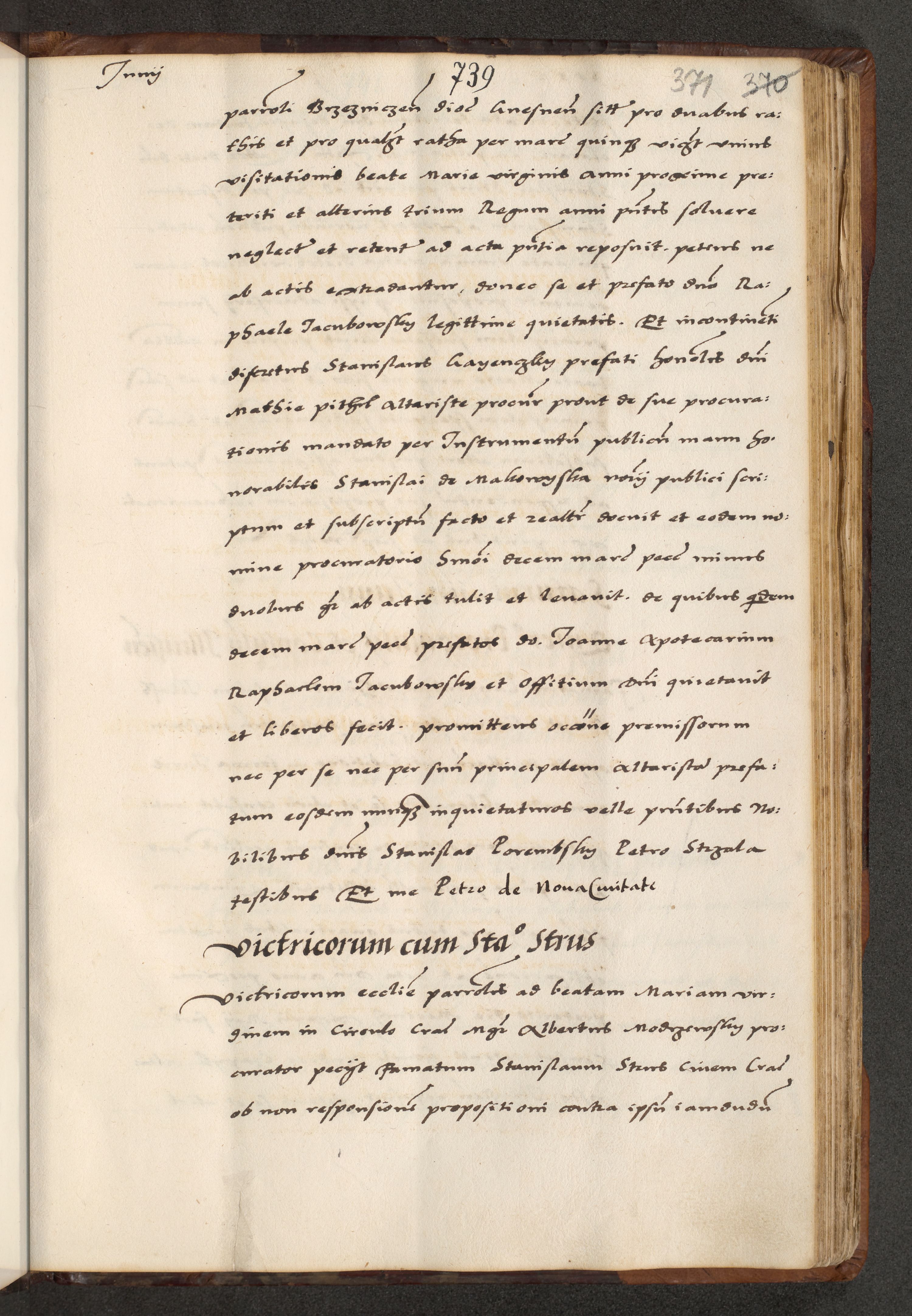 [A]cta actorum causarum, sententiarum tam diffinitivarum quam interloquutoriarum, obligationum, constitutionum et contractuum coram reverendo patre domino Petro Porembski preposito Osvieczimensi, canonico et officiali generali Cracoviensi de anno Domini millesimo quingentesimo quinguagesimo primo, cuius indictio est nona, pontificatus sanctissimi in Christo patris et domini nostri domini Juliii divina providencia pape tercii, anno secundo, a die et mense infrascriptis feliciter continiantur
