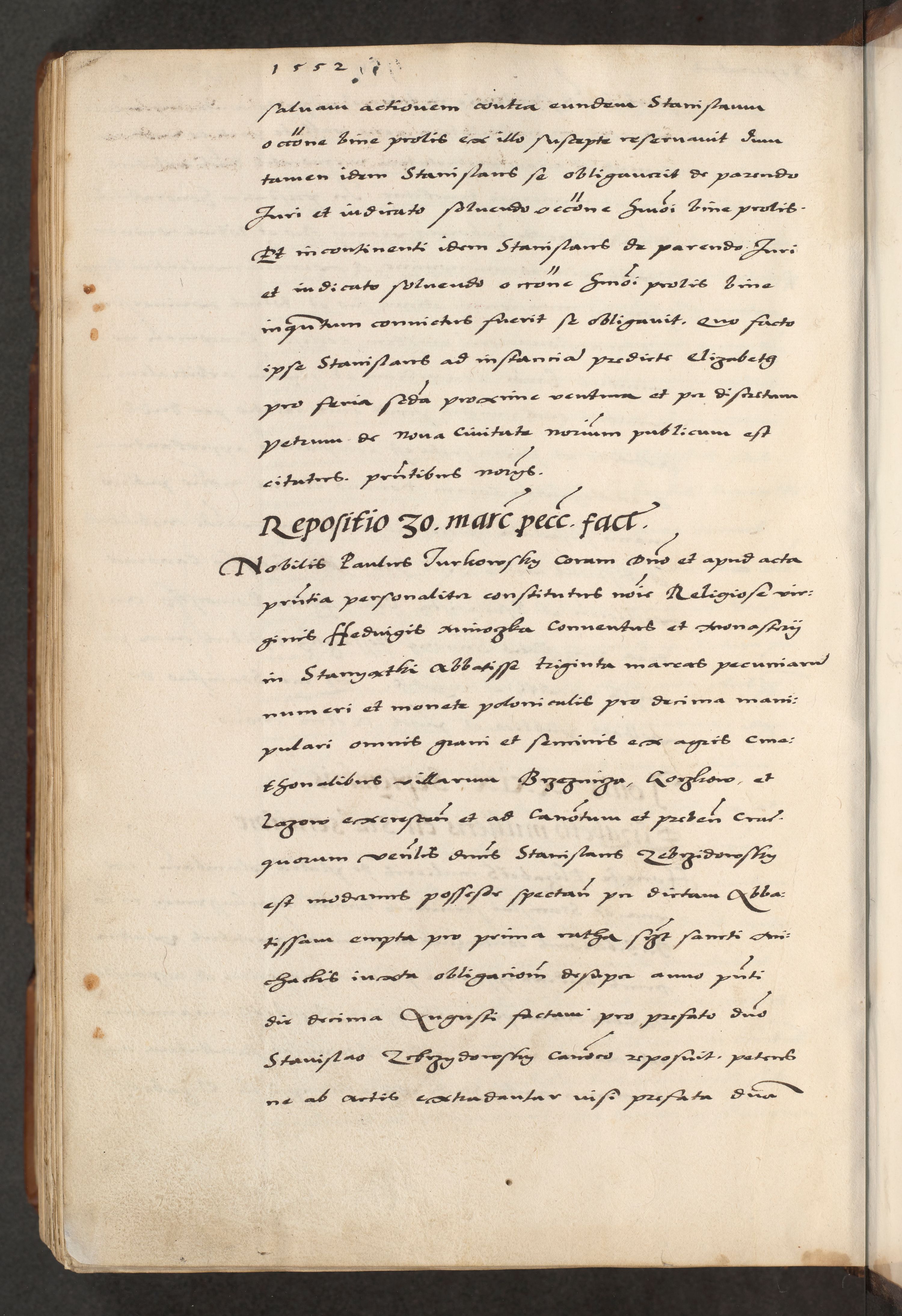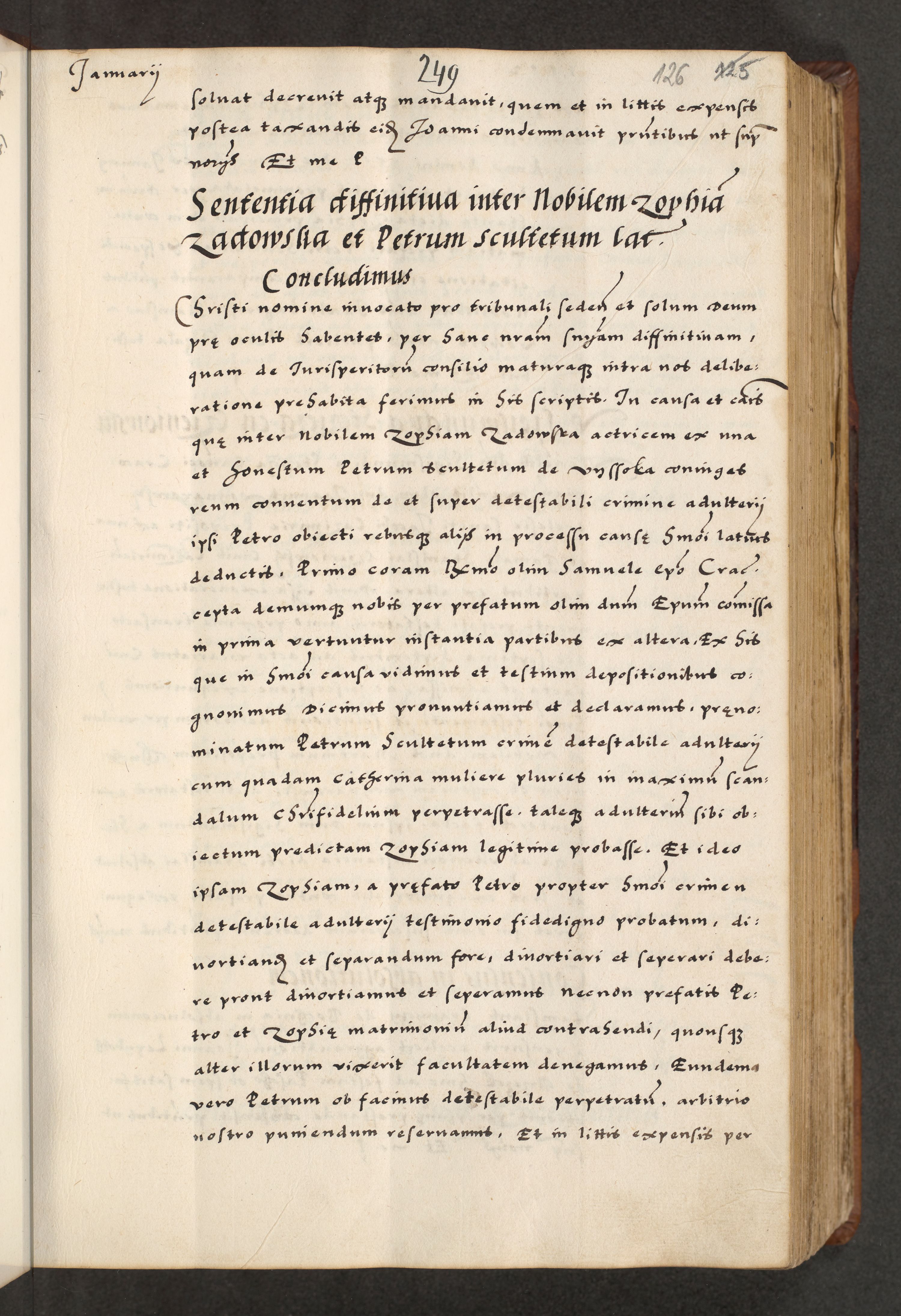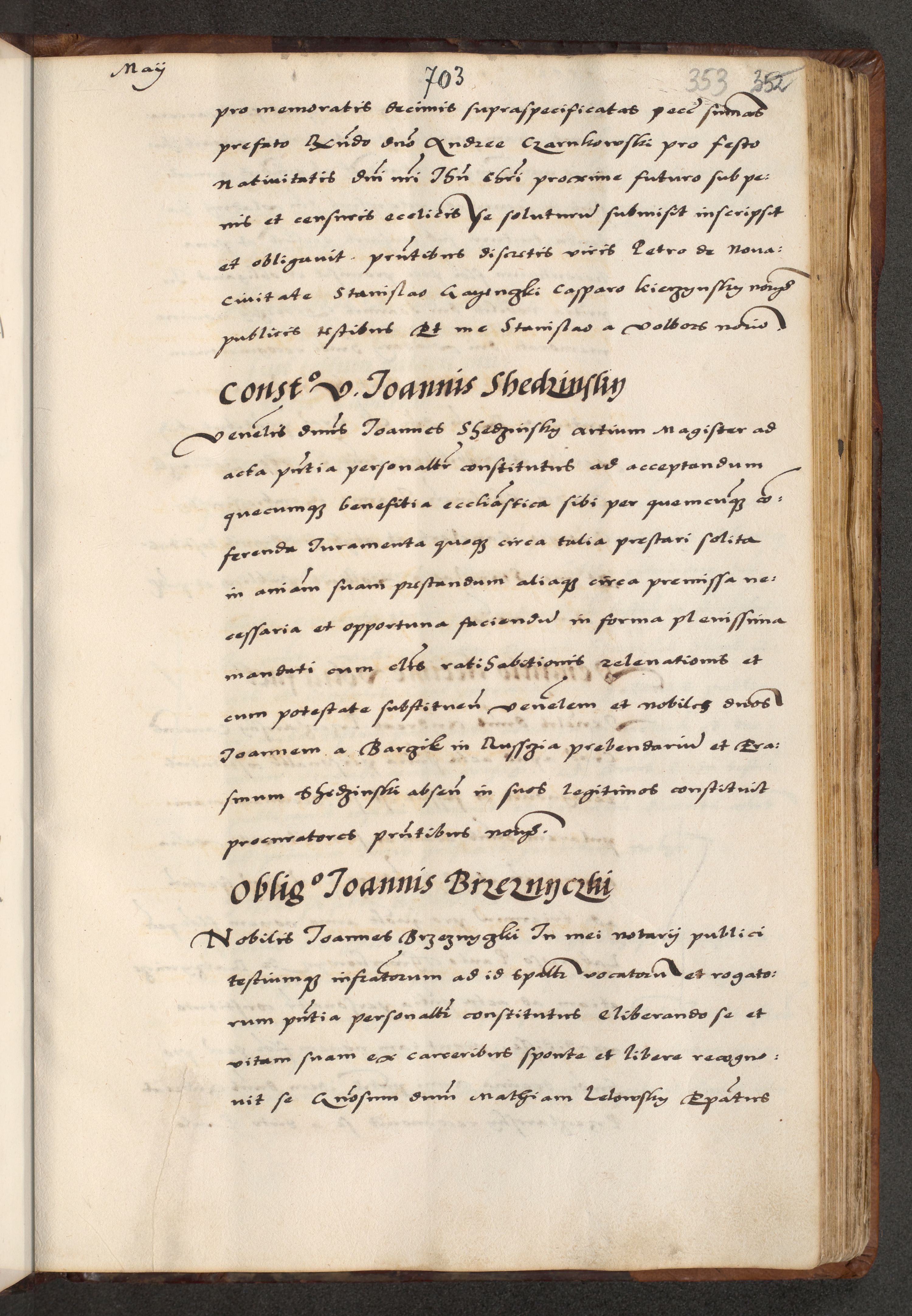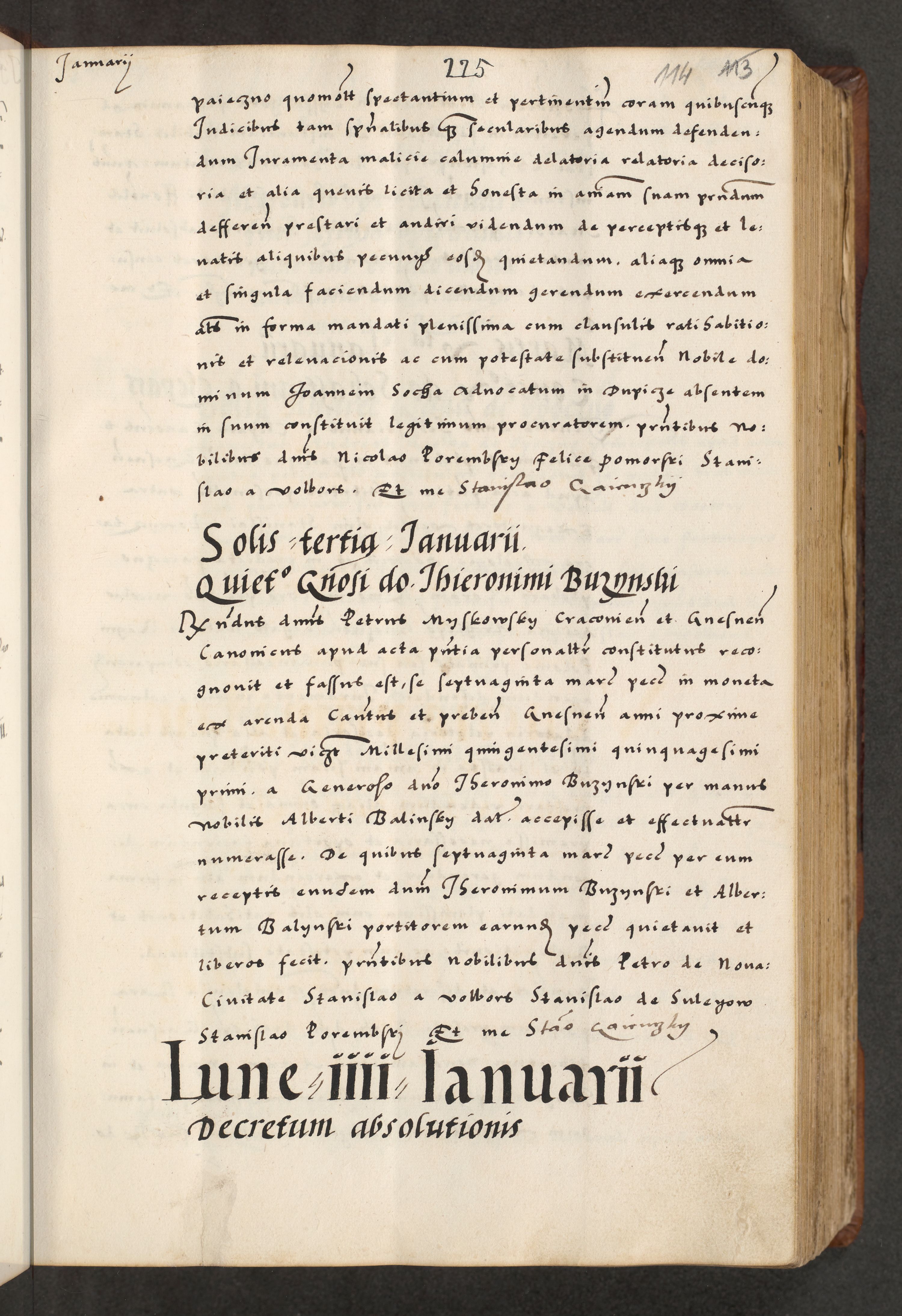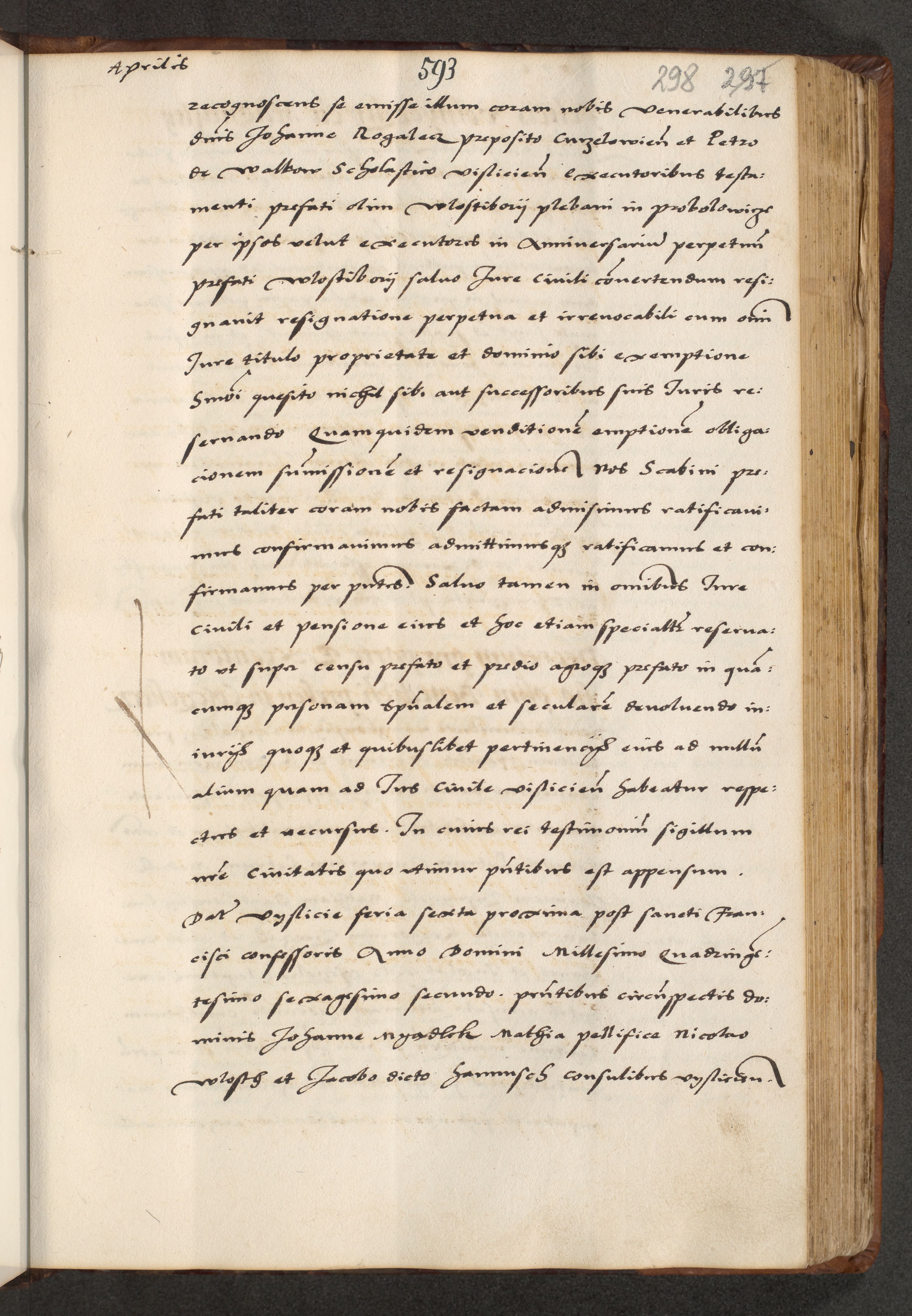 [A]cta actorum causarum, sententiarum tam diffinitivarum quam interloquutoriarum, obligationum, constitutionum et contractuum coram reverendo patre domino Petro Porembski preposito Osvieczimensi, canonico et officiali generali Cracoviensi de anno Domini millesimo quingentesimo quinguagesimo primo, cuius indictio est nona, pontificatus sanctissimi in Christo patris et domini nostri domini Juliii divina providencia pape tercii, anno secundo, a die et mense infrascriptis feliciter continiantur