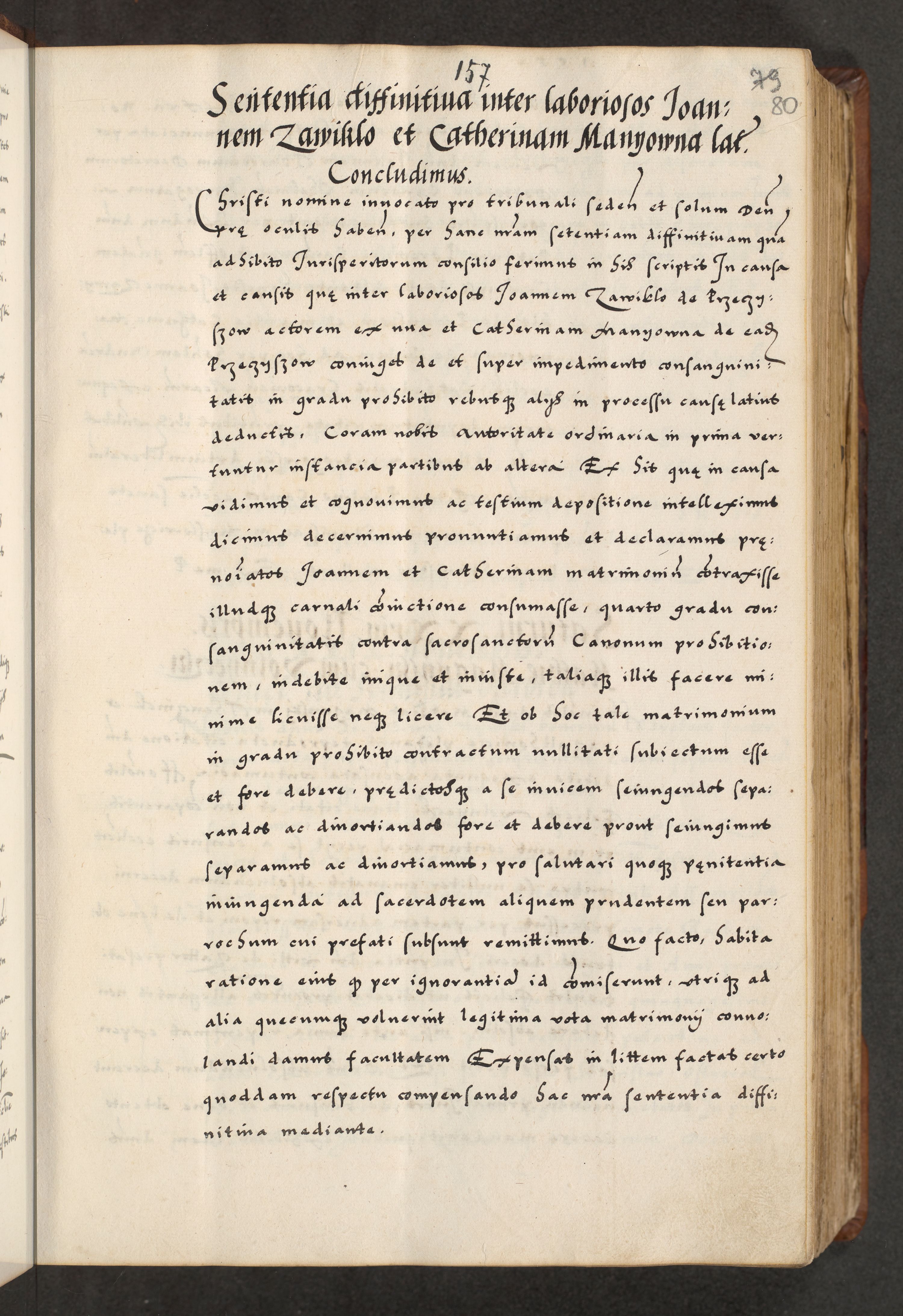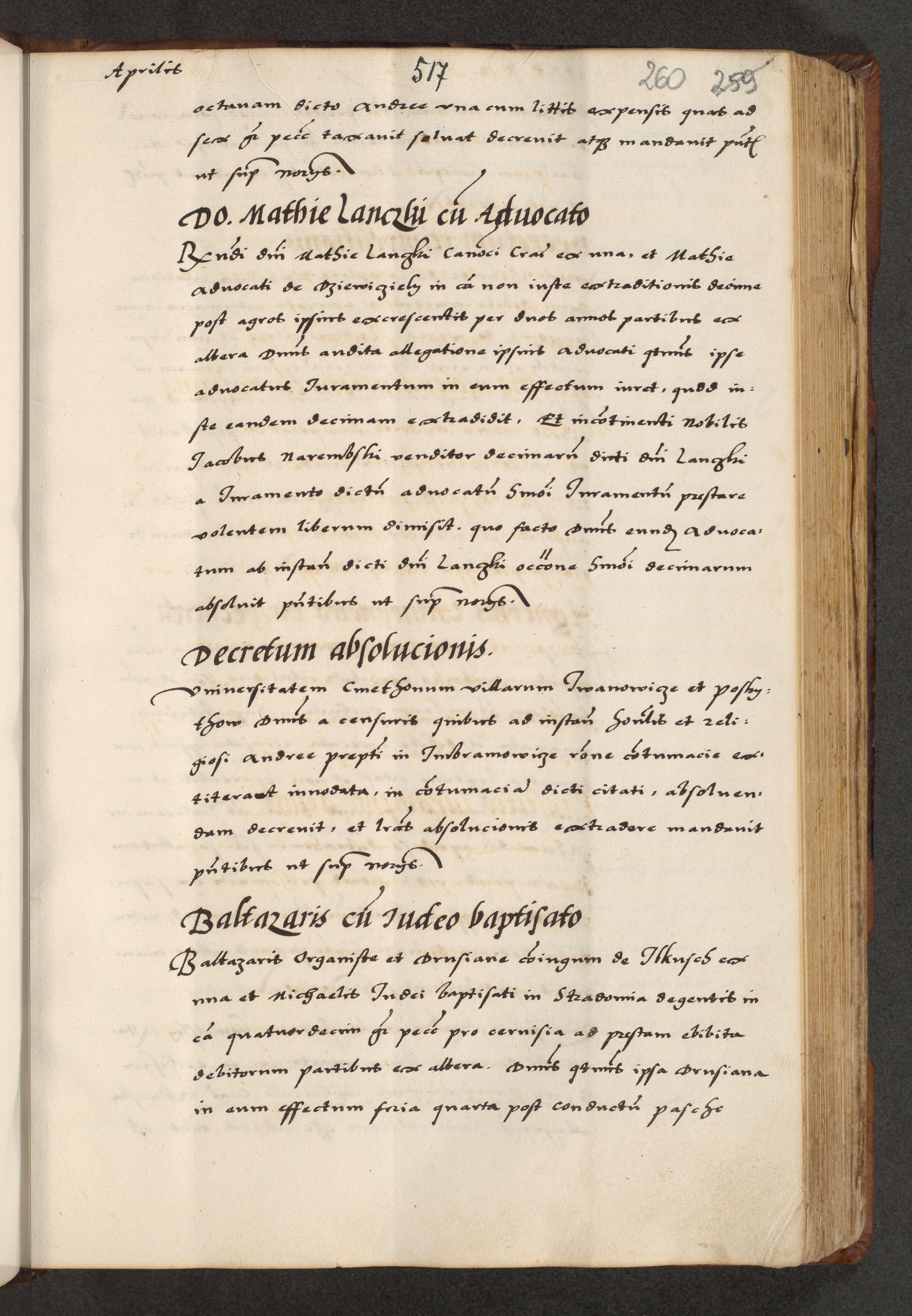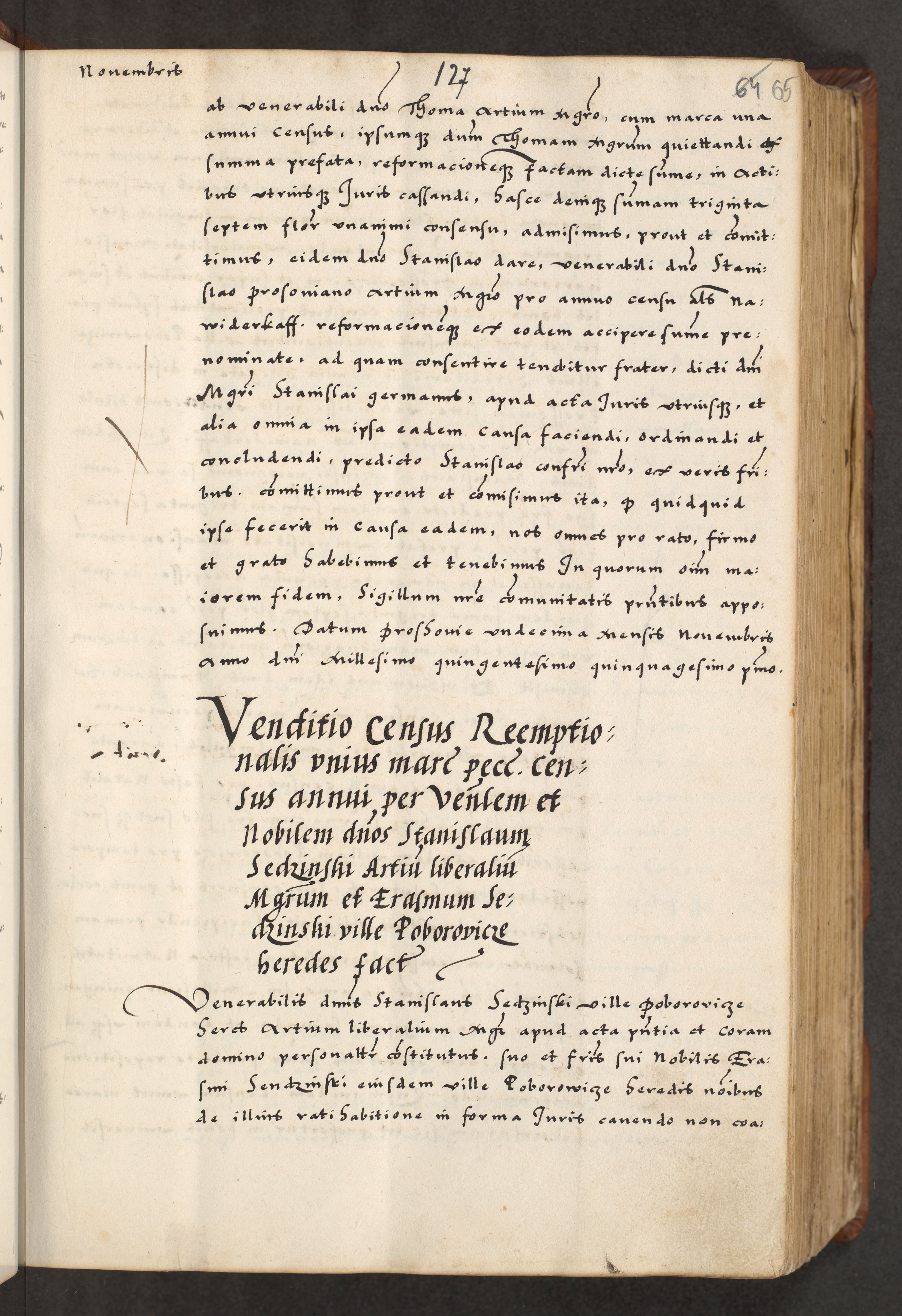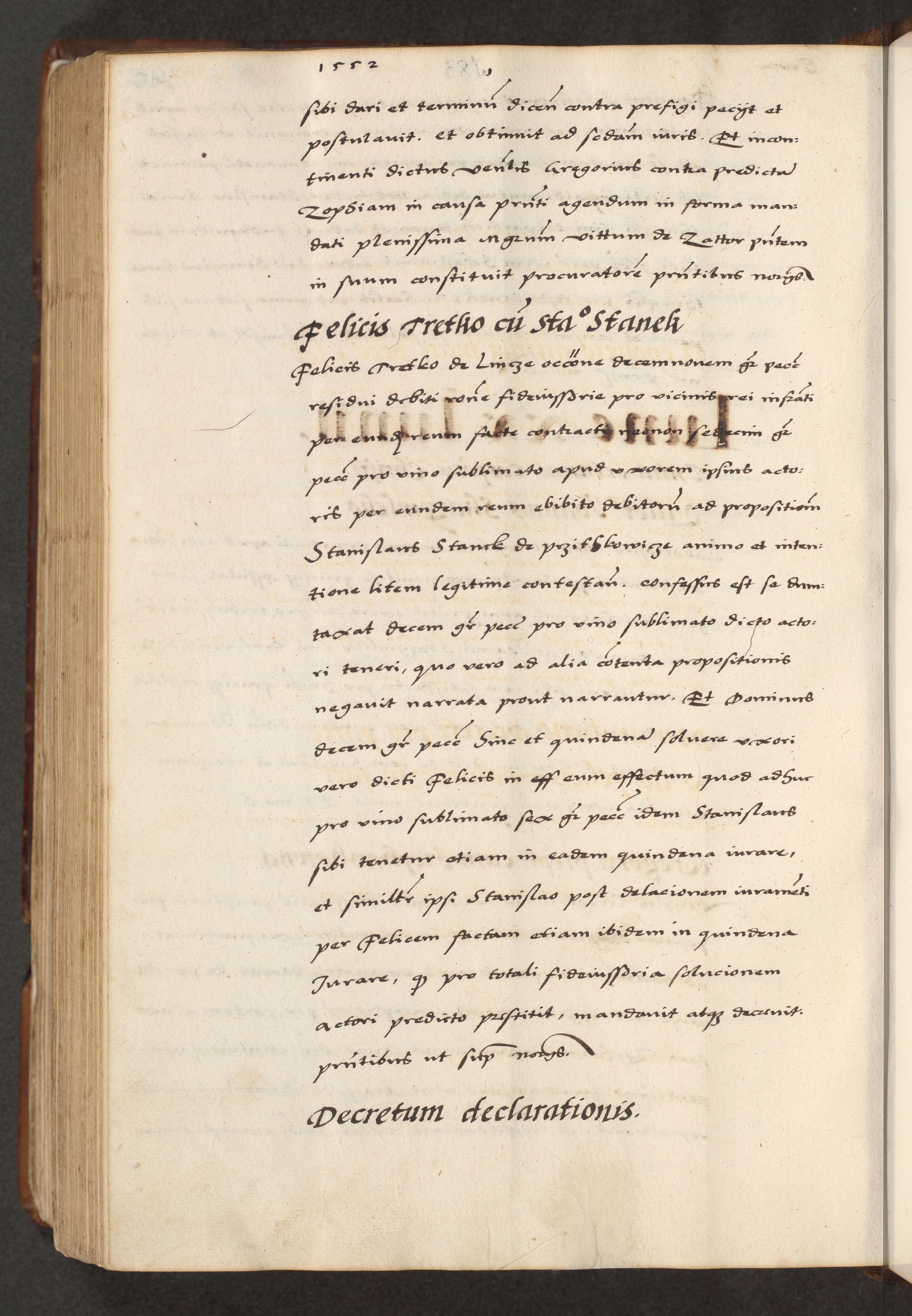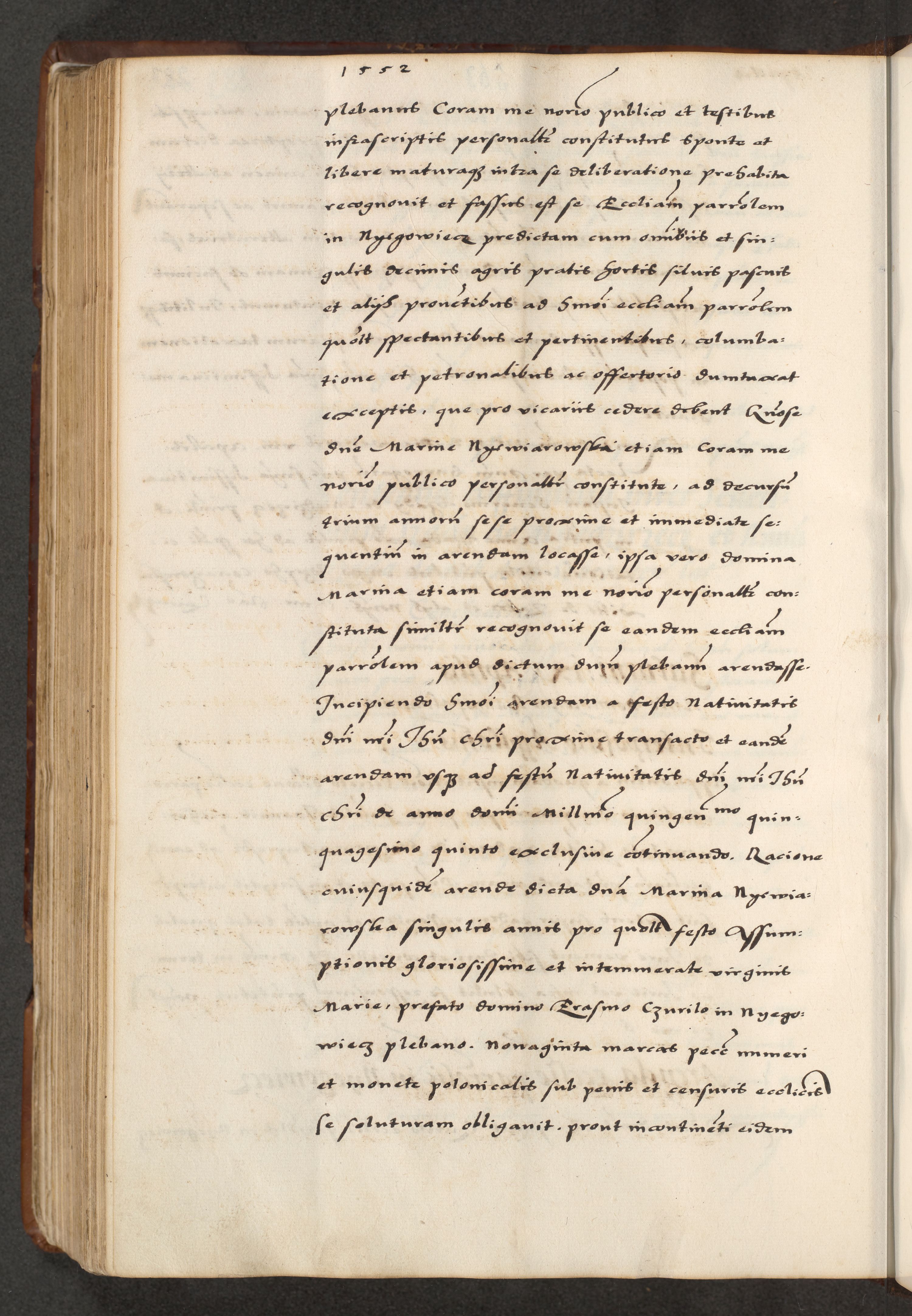[A]cta actorum causarum, sententiarum tam diffinitivarum quam interloquutoriarum, obligationum, constitutionum et contractuum coram reverendo patre domino Petro Porembski preposito Osvieczimensi, canonico et officiali generali Cracoviensi de anno Domini millesimo quingentesimo quinguagesimo primo, cuius indictio est nona, pontificatus sanctissimi in Christo patris et domini nostri domini Juliii divina providencia pape tercii, anno secundo, a die et mense infrascriptis feliciter continiantur