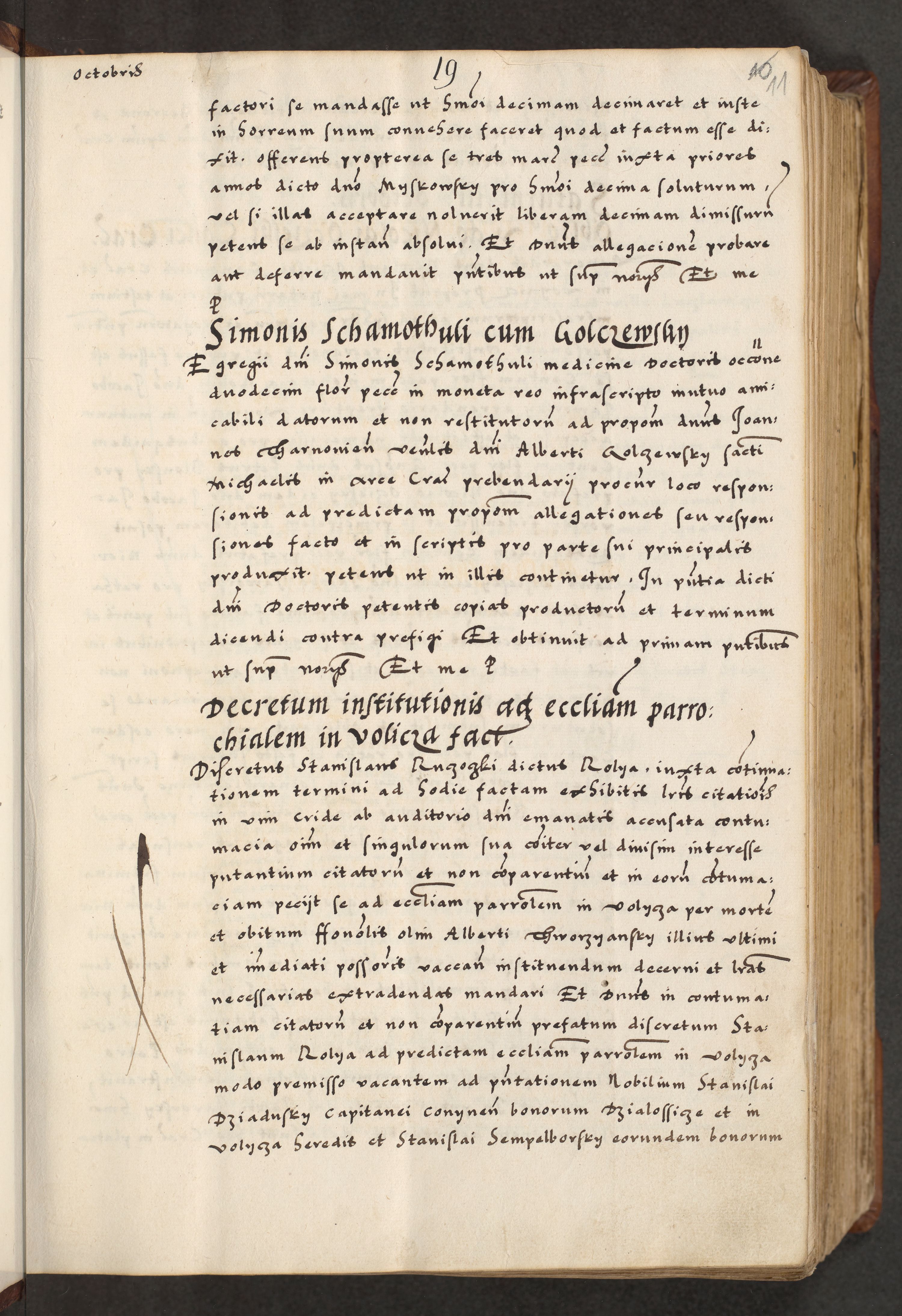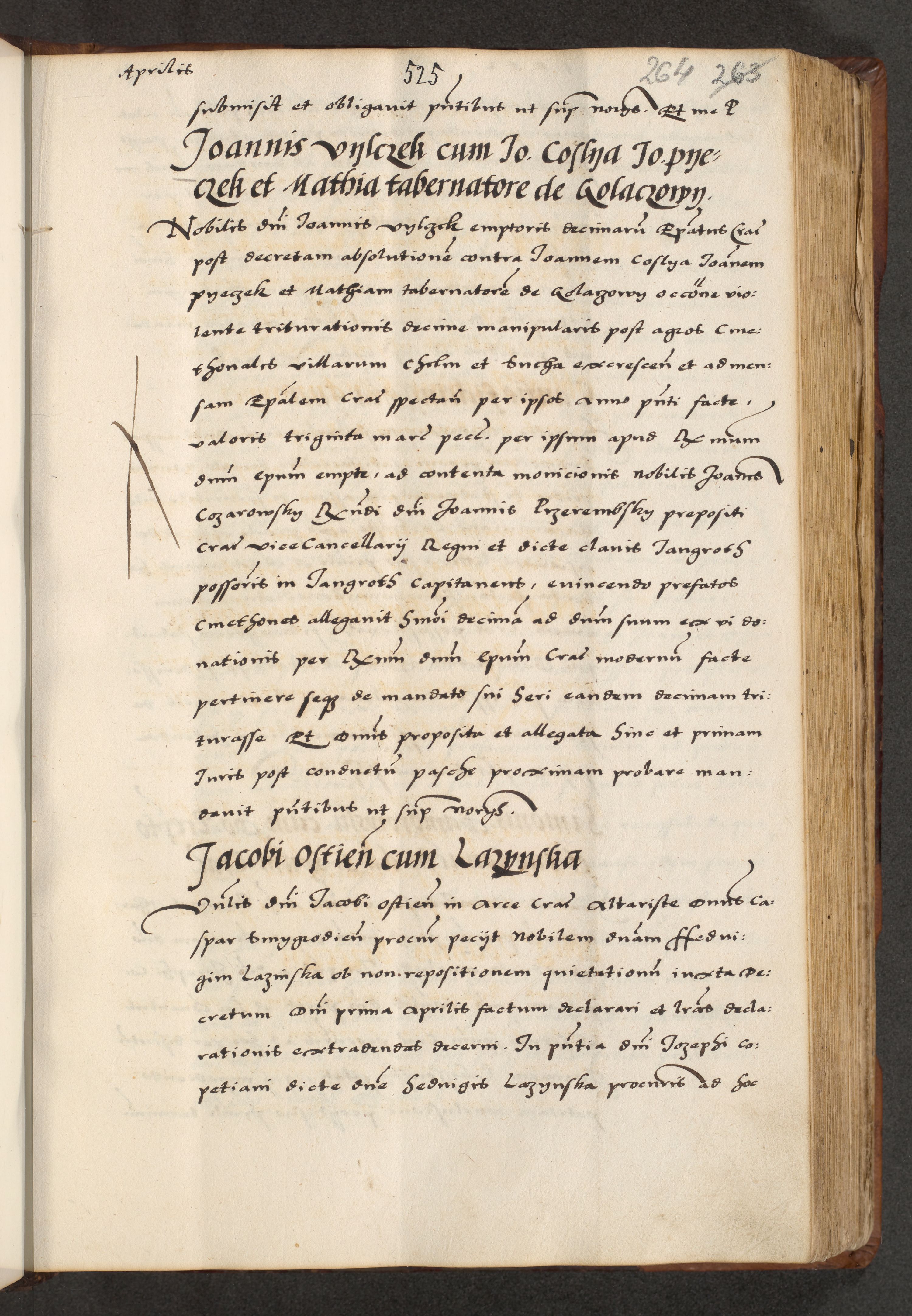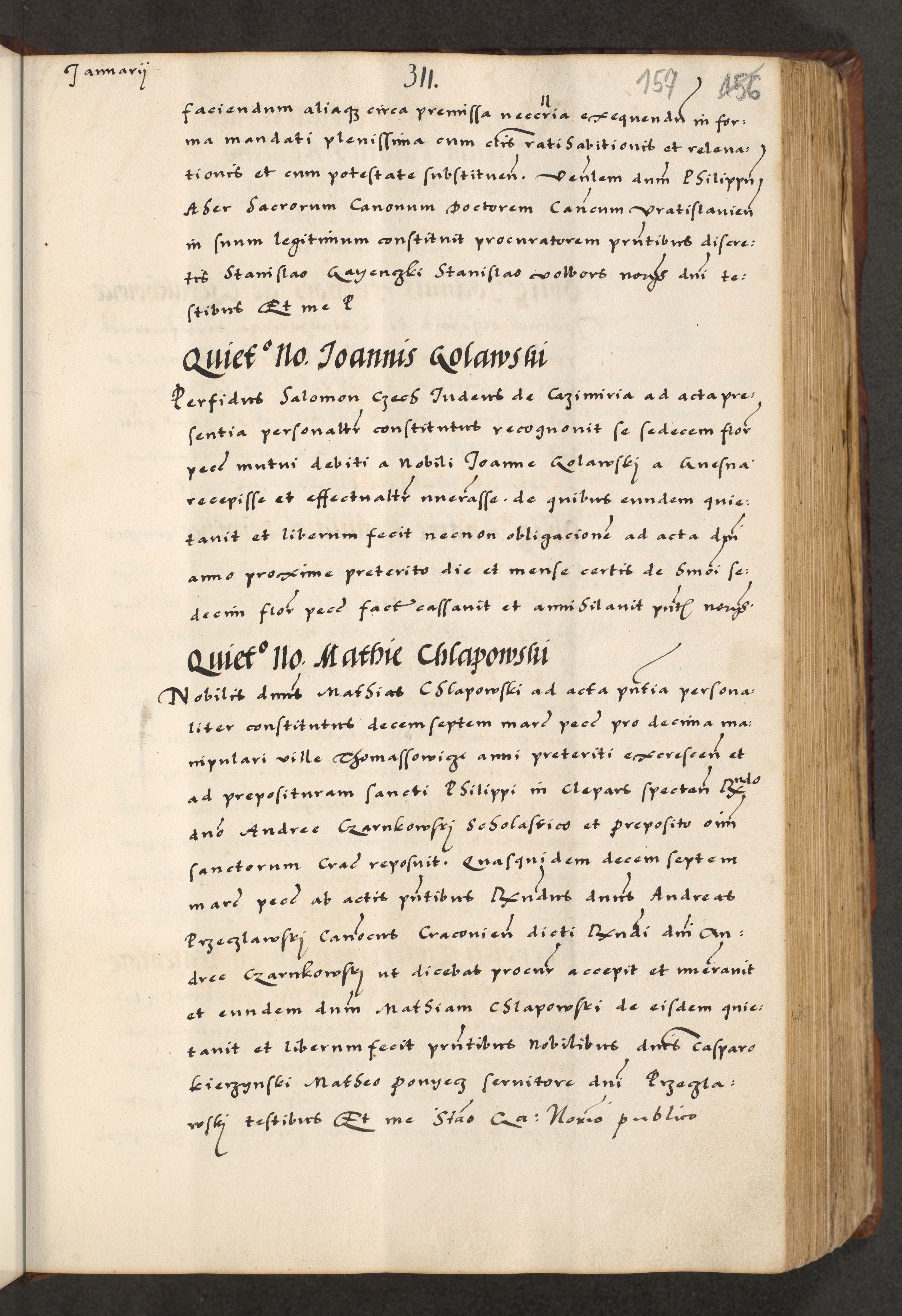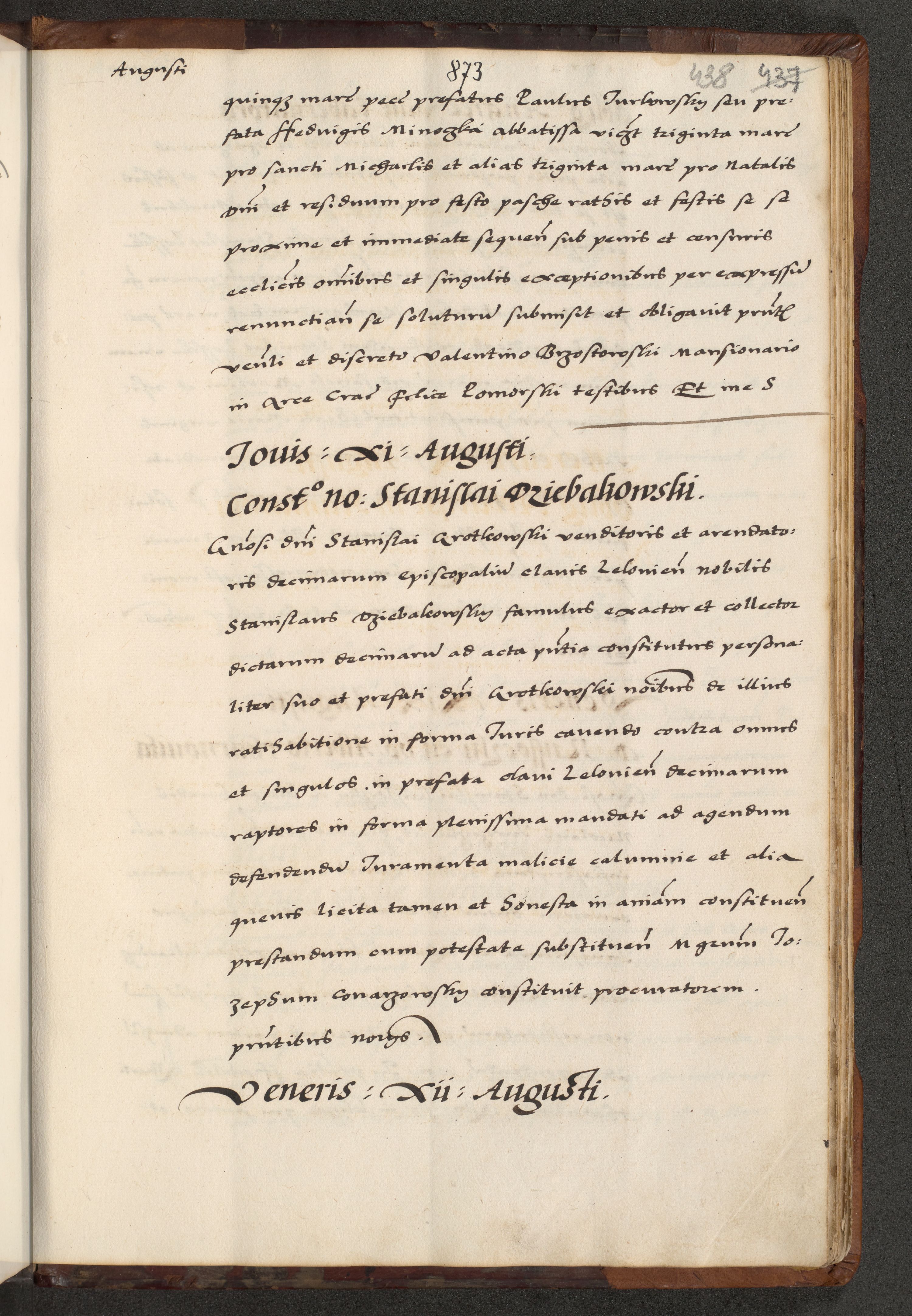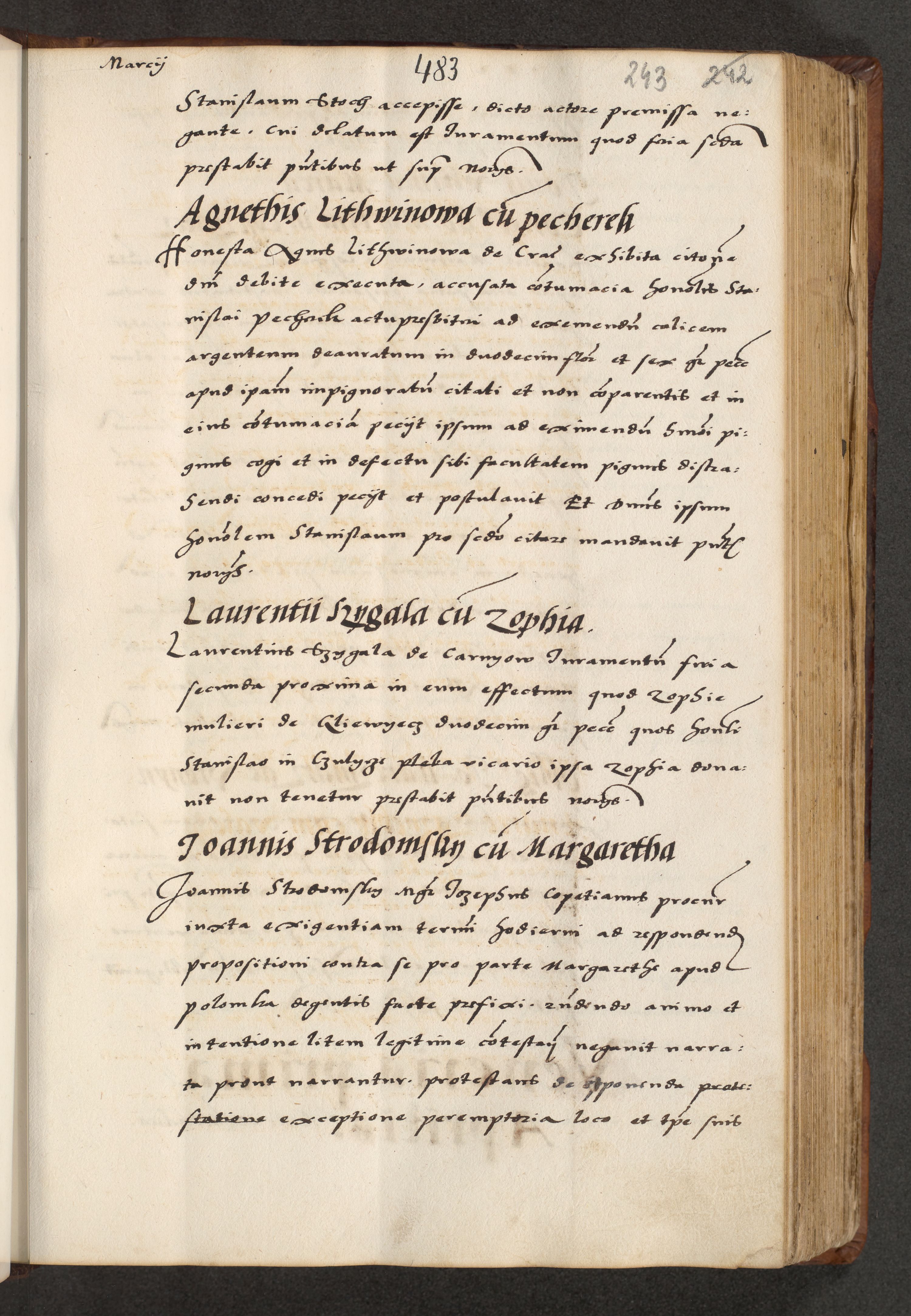 [A]cta actorum causarum, sententiarum tam diffinitivarum quam interloquutoriarum, obligationum, constitutionum et contractuum coram reverendo patre domino Petro Porembski preposito Osvieczimensi, canonico et officiali generali Cracoviensi de anno Domini millesimo quingentesimo quinguagesimo primo, cuius indictio est nona, pontificatus sanctissimi in Christo patris et domini nostri domini Juliii divina providencia pape tercii, anno secundo, a die et mense infrascriptis feliciter continiantur