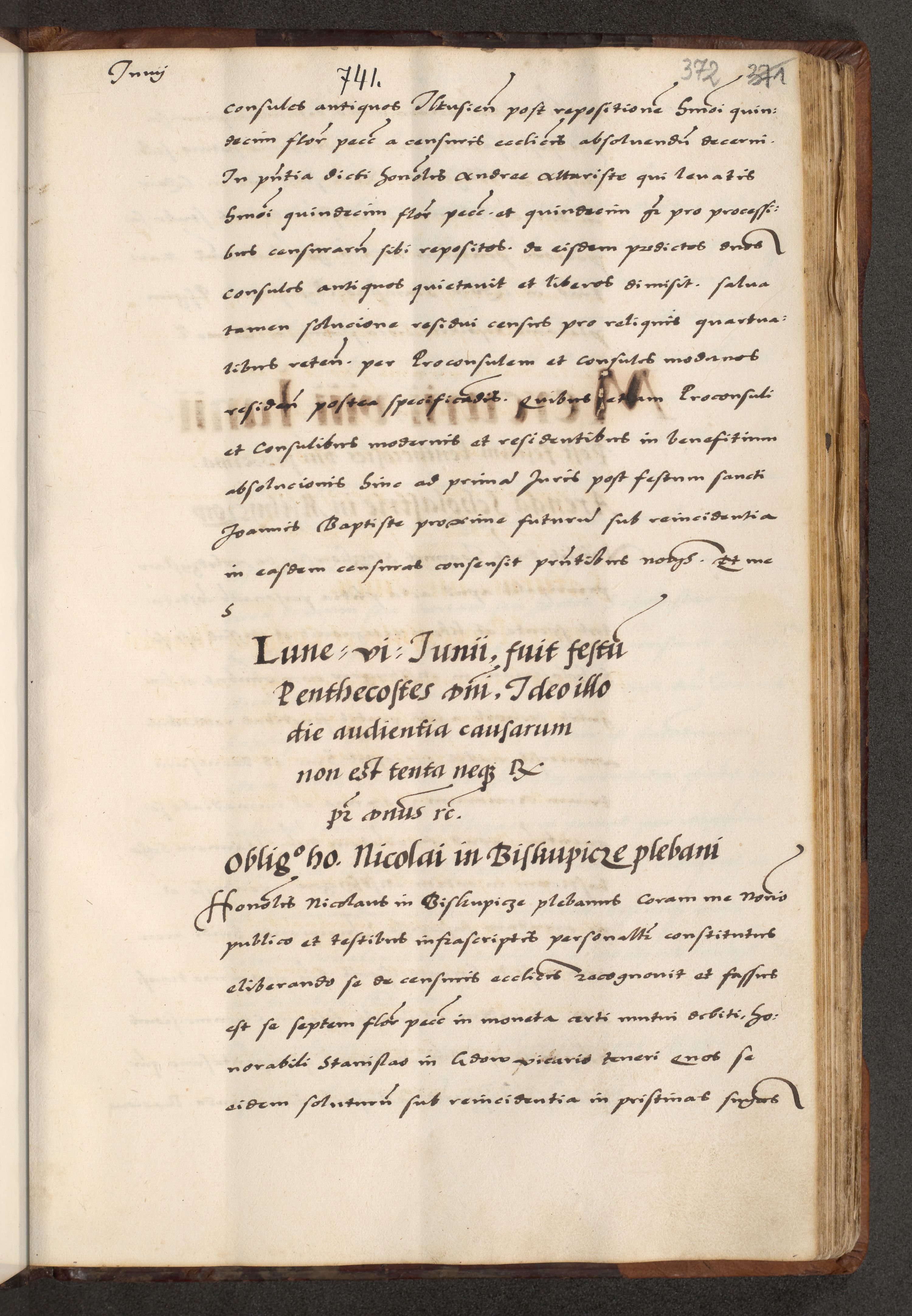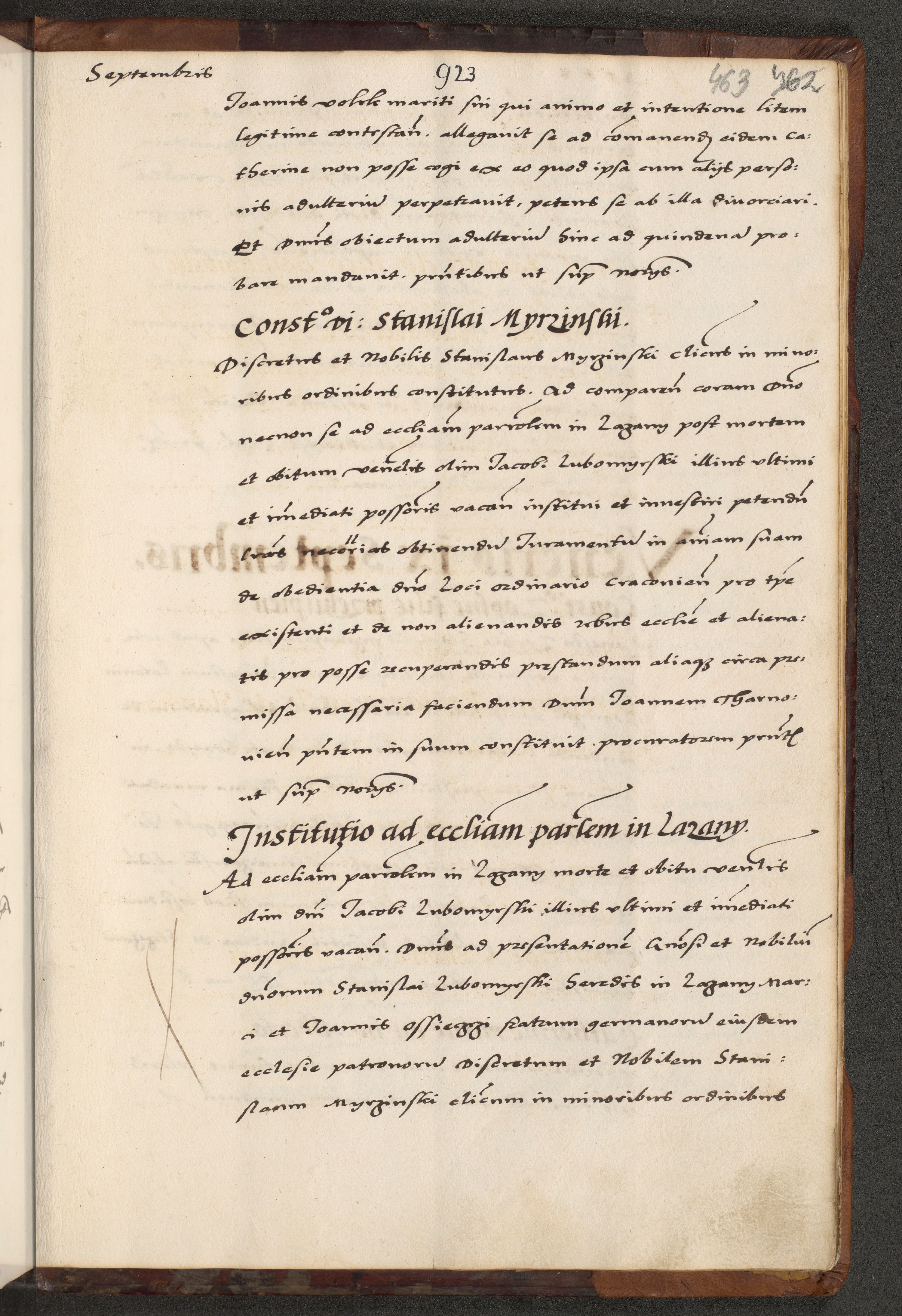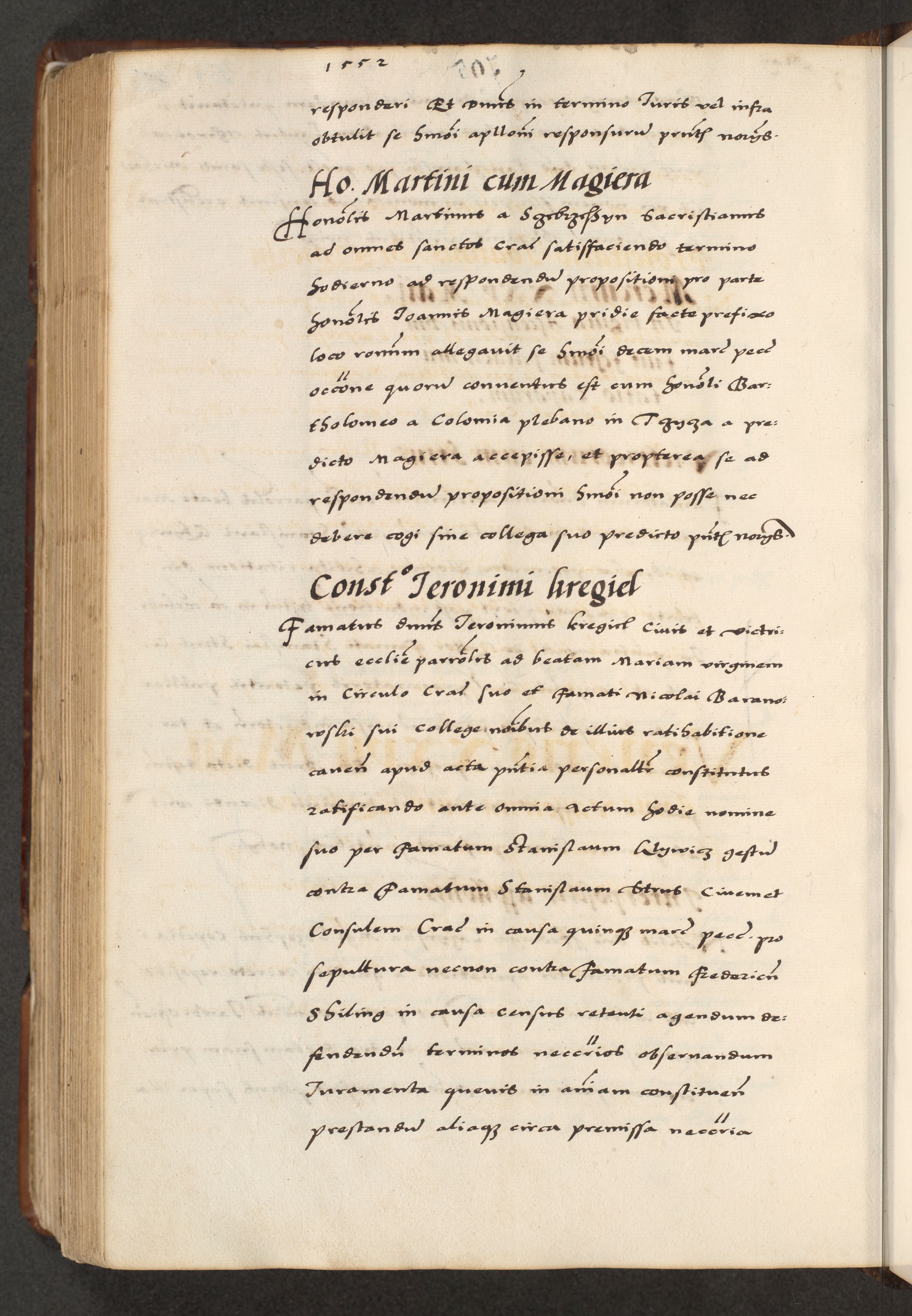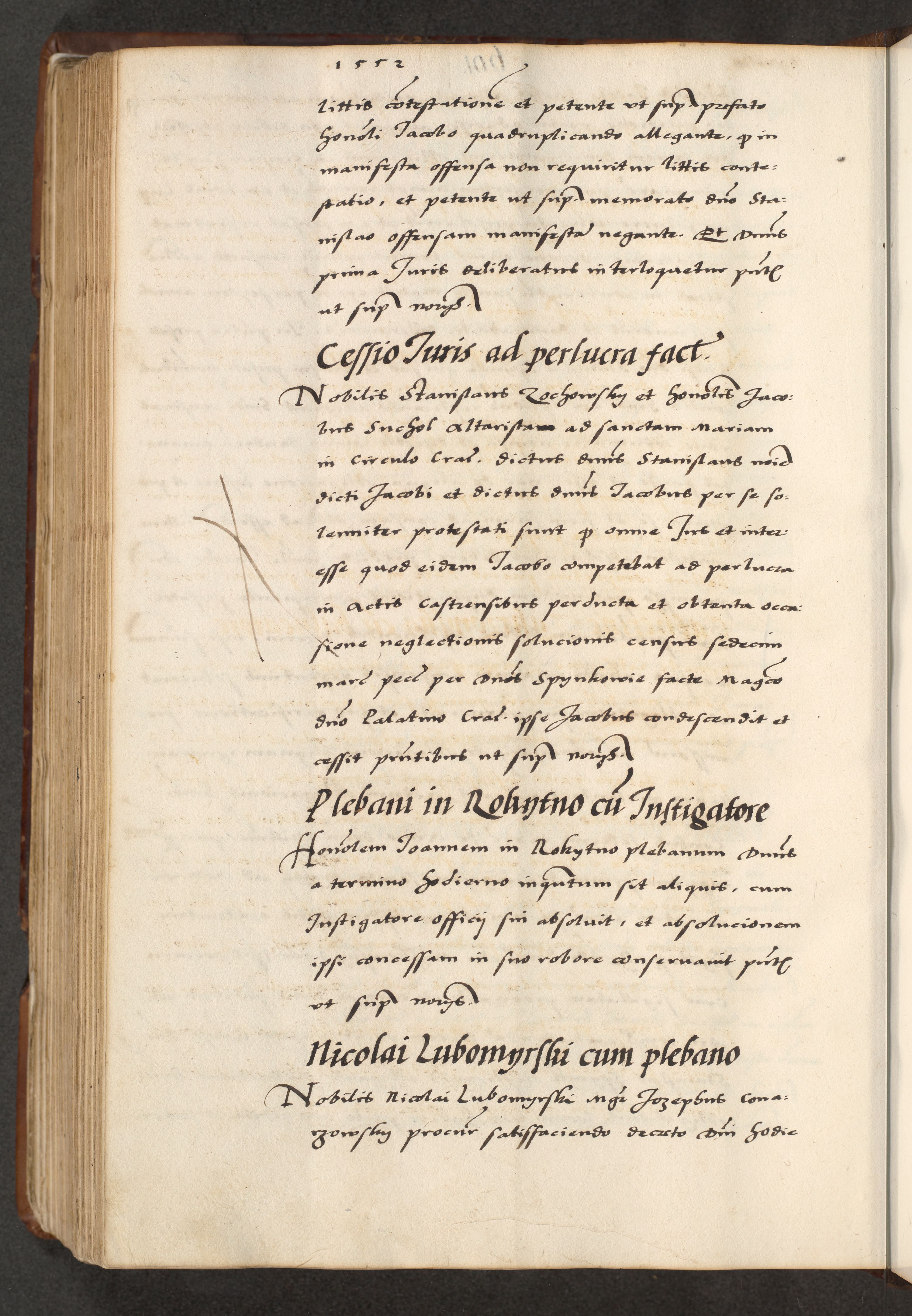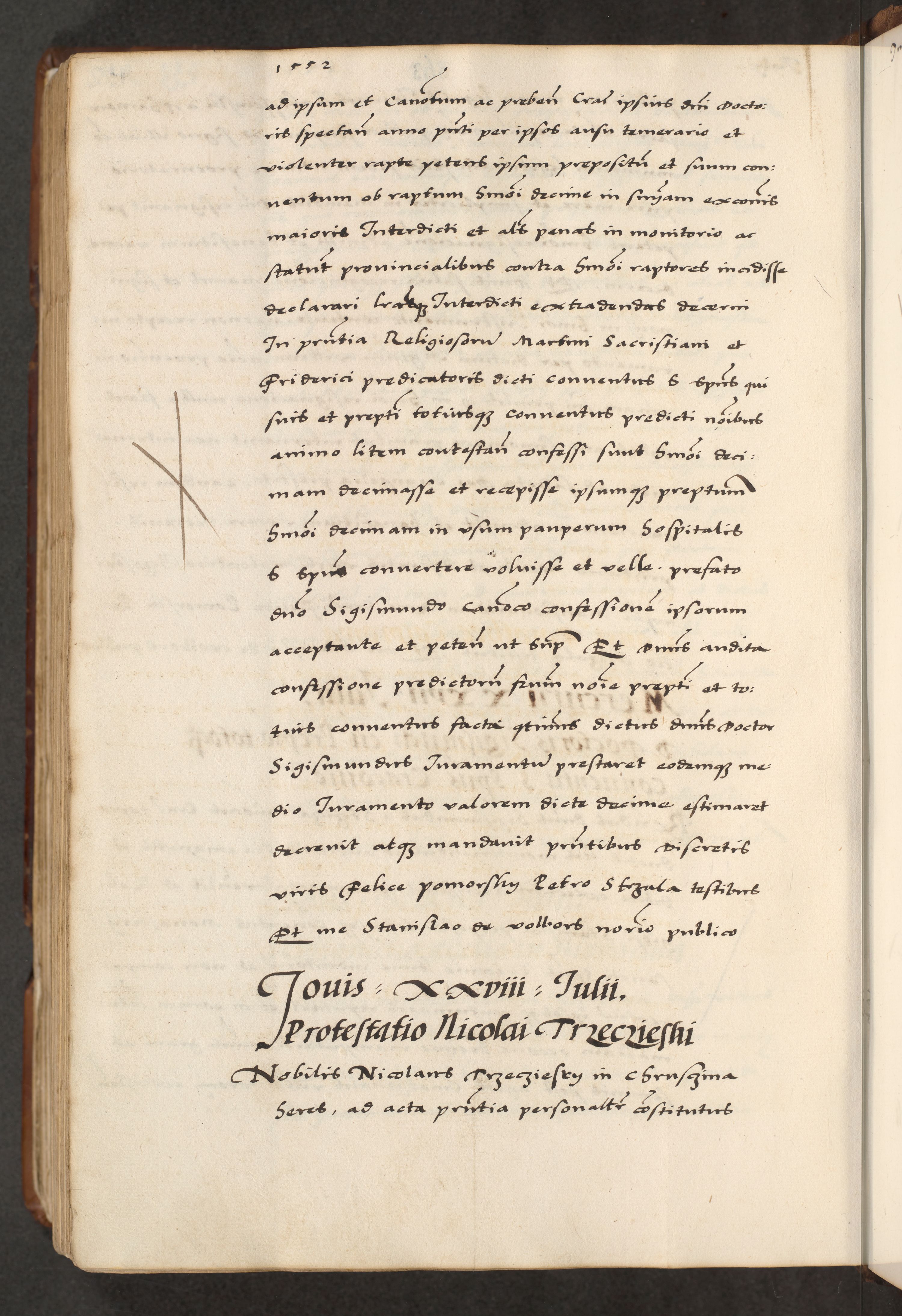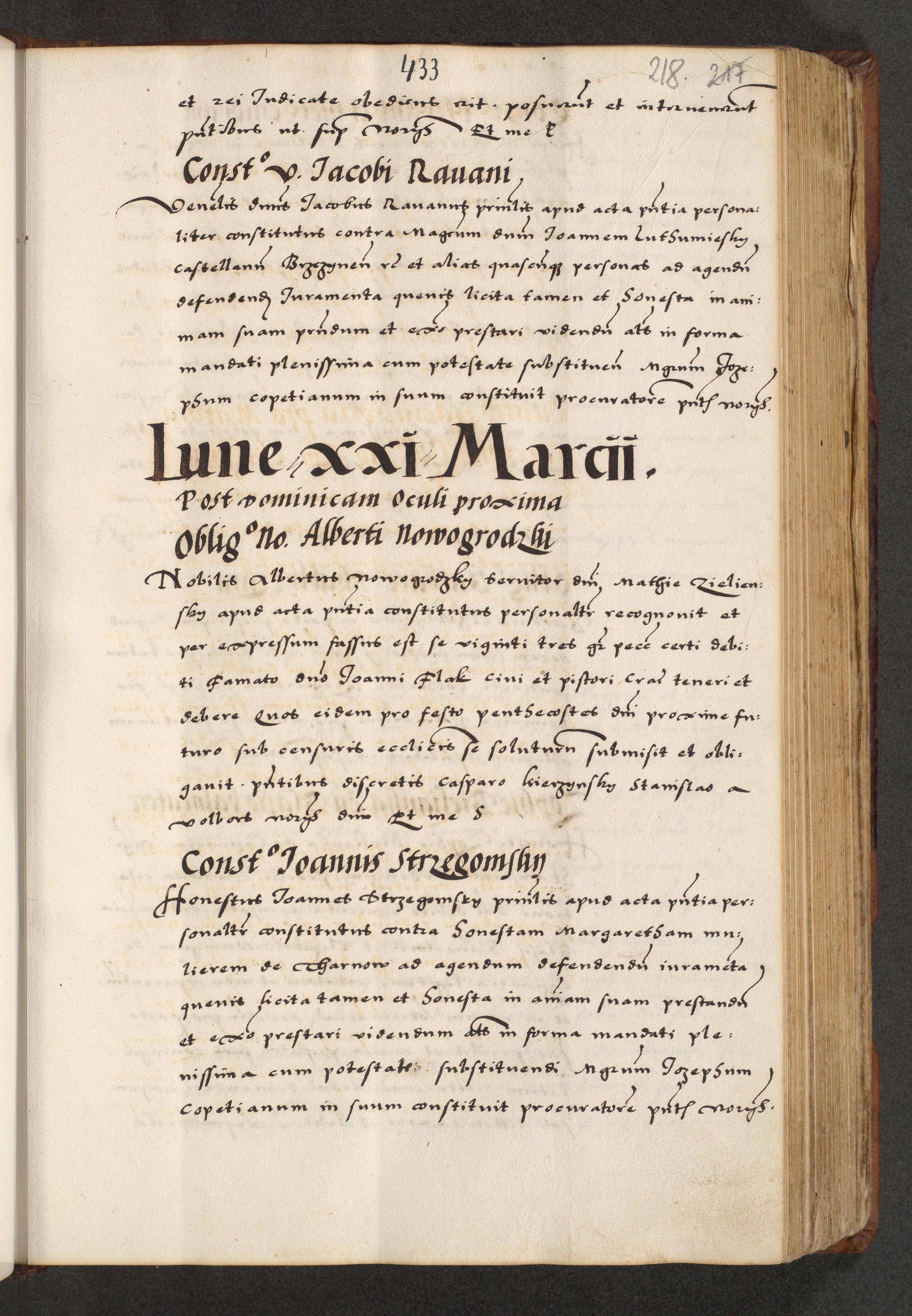[A]cta actorum causarum, sententiarum tam diffinitivarum quam interloquutoriarum, obligationum, constitutionum et contractuum coram reverendo patre domino Petro Porembski preposito Osvieczimensi, canonico et officiali generali Cracoviensi de anno Domini millesimo quingentesimo quinguagesimo primo, cuius indictio est nona, pontificatus sanctissimi in Christo patris et domini nostri domini Juliii divina providencia pape tercii, anno secundo, a die et mense infrascriptis feliciter continiantur