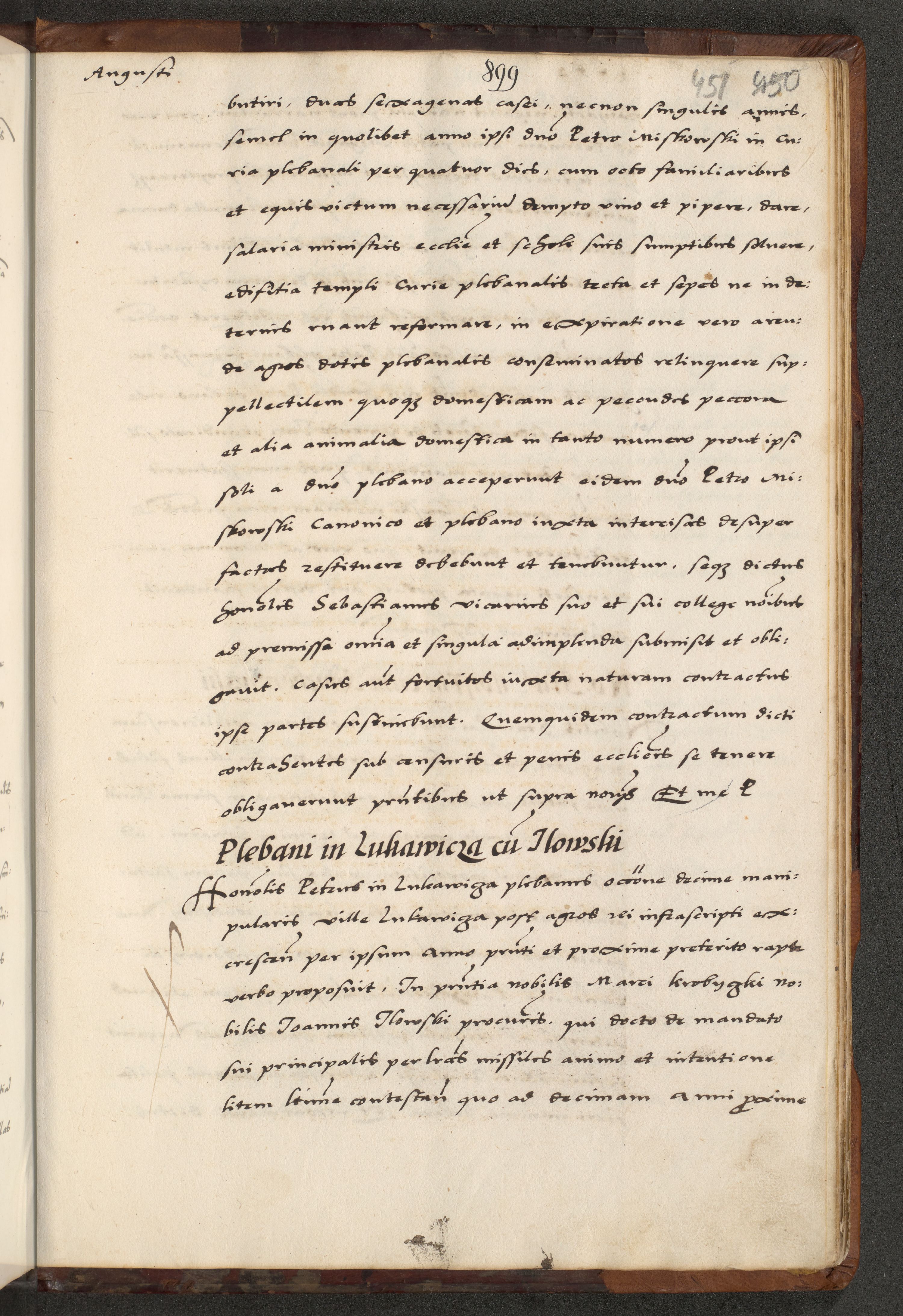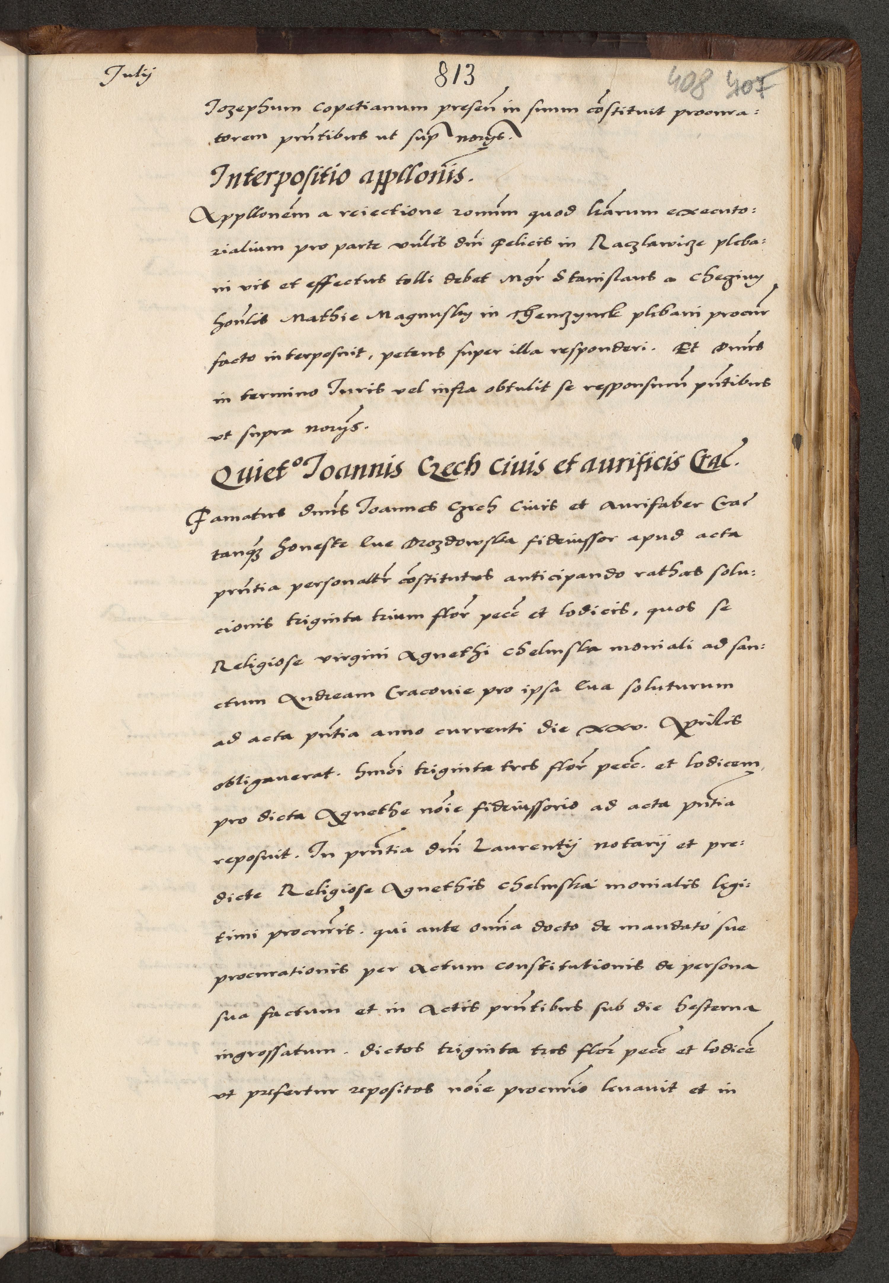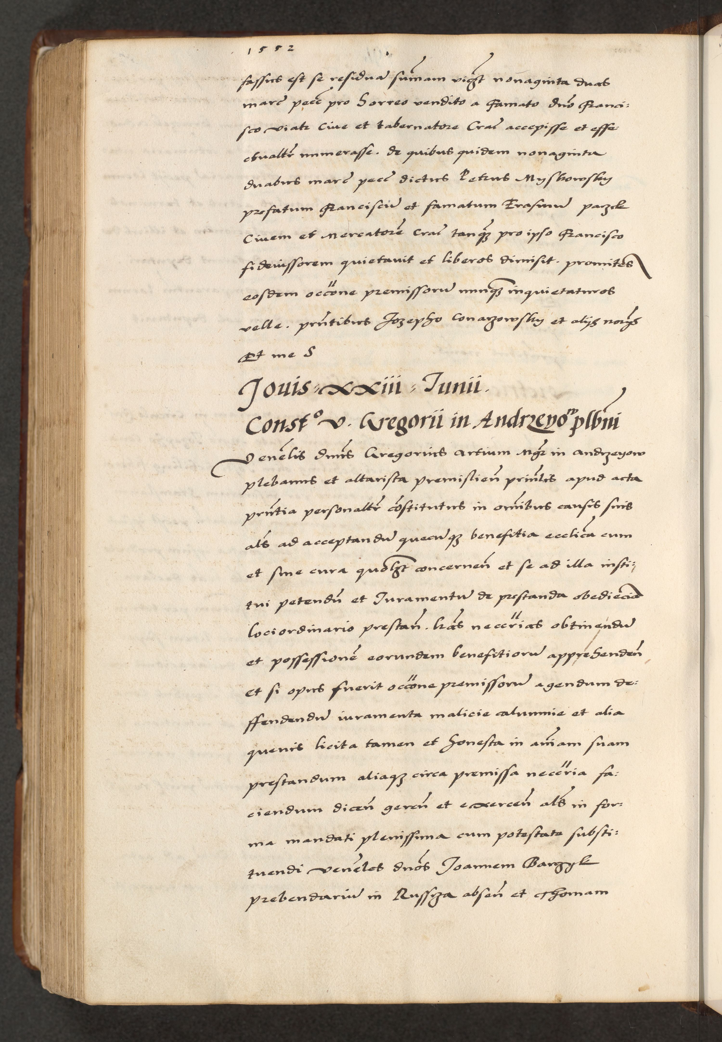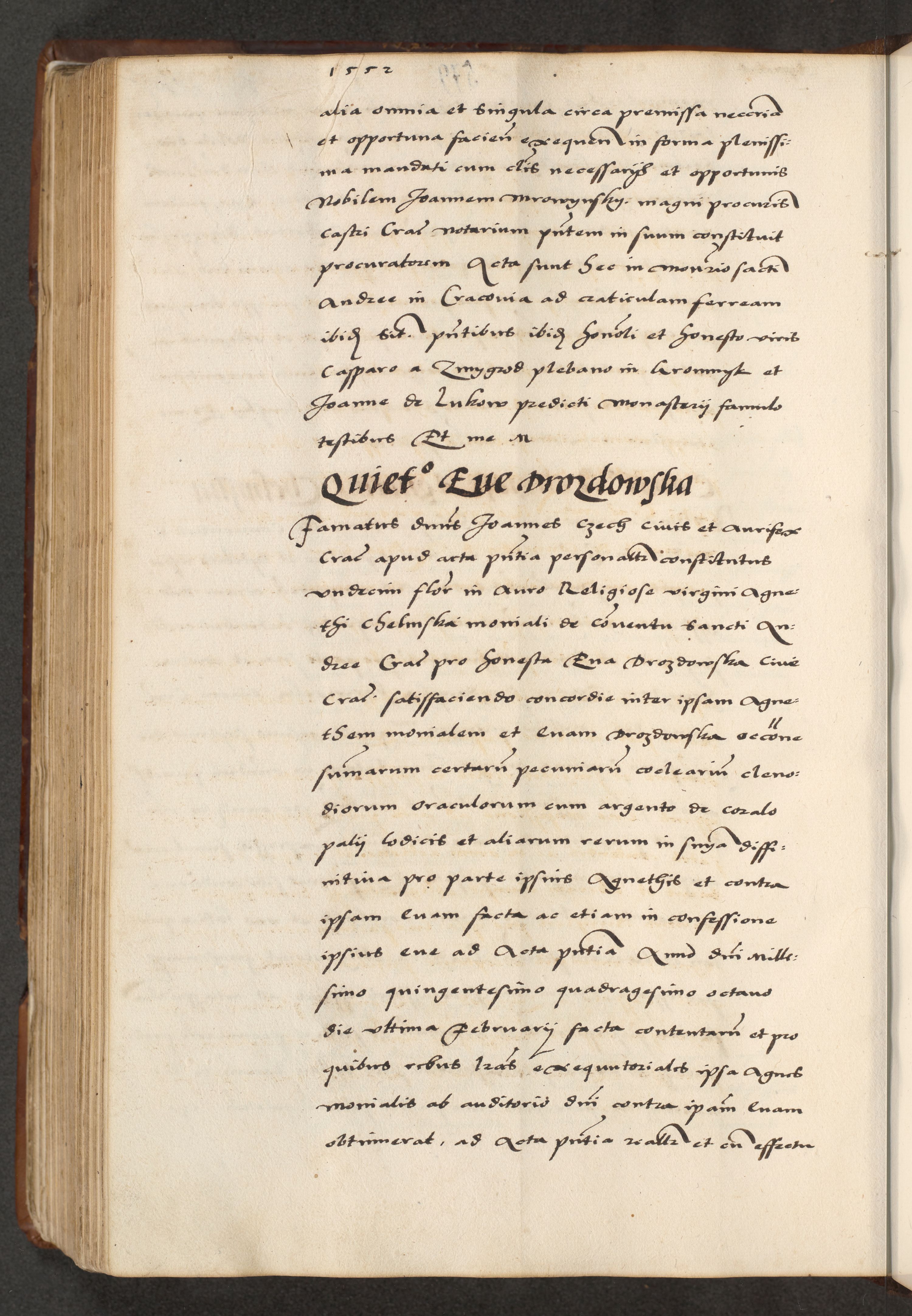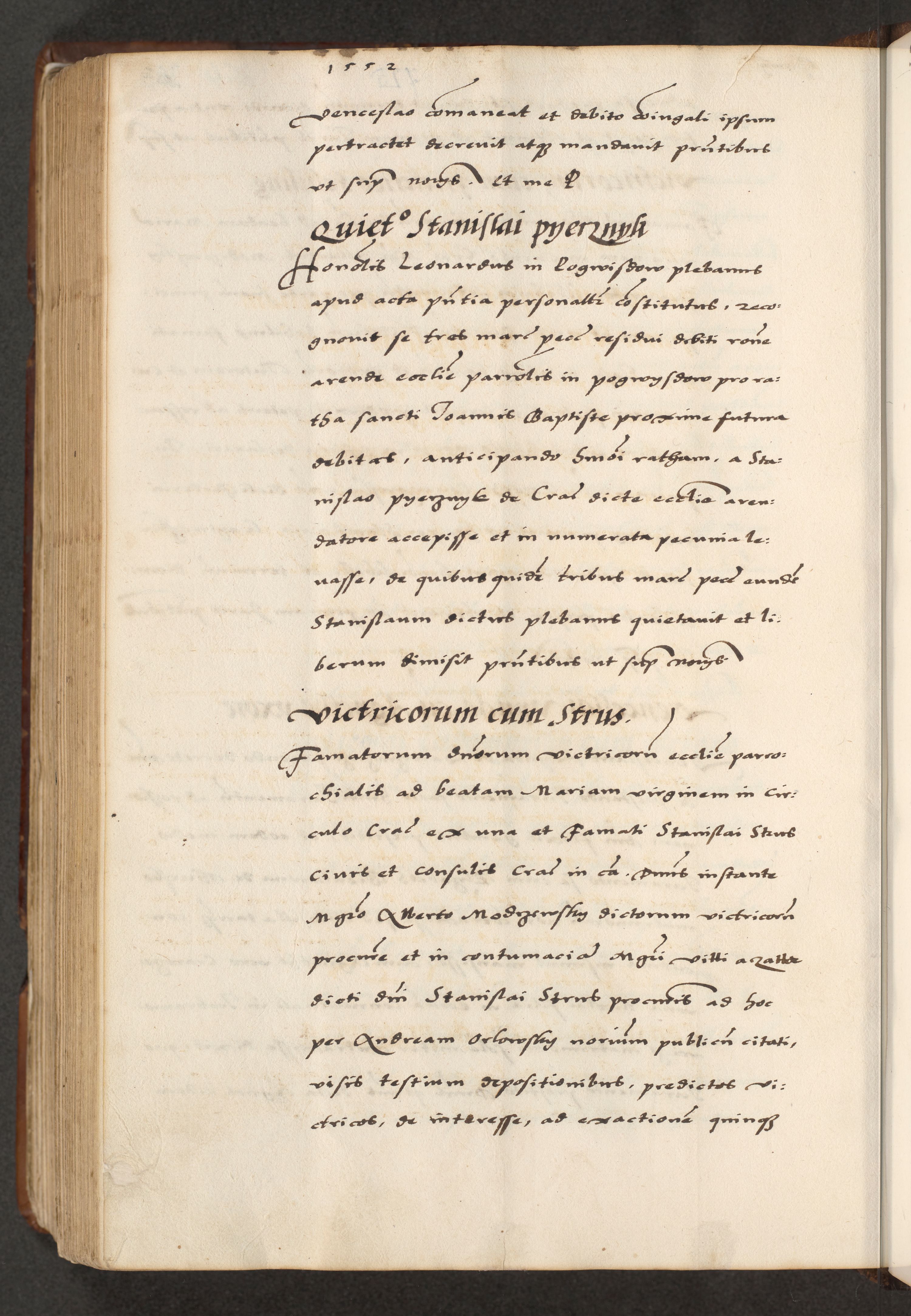 [A]cta actorum causarum, sententiarum tam diffinitivarum quam interloquutoriarum, obligationum, constitutionum et contractuum coram reverendo patre domino Petro Porembski preposito Osvieczimensi, canonico et officiali generali Cracoviensi de anno Domini millesimo quingentesimo quinguagesimo primo, cuius indictio est nona, pontificatus sanctissimi in Christo patris et domini nostri domini Juliii divina providencia pape tercii, anno secundo, a die et mense infrascriptis feliciter continiantur