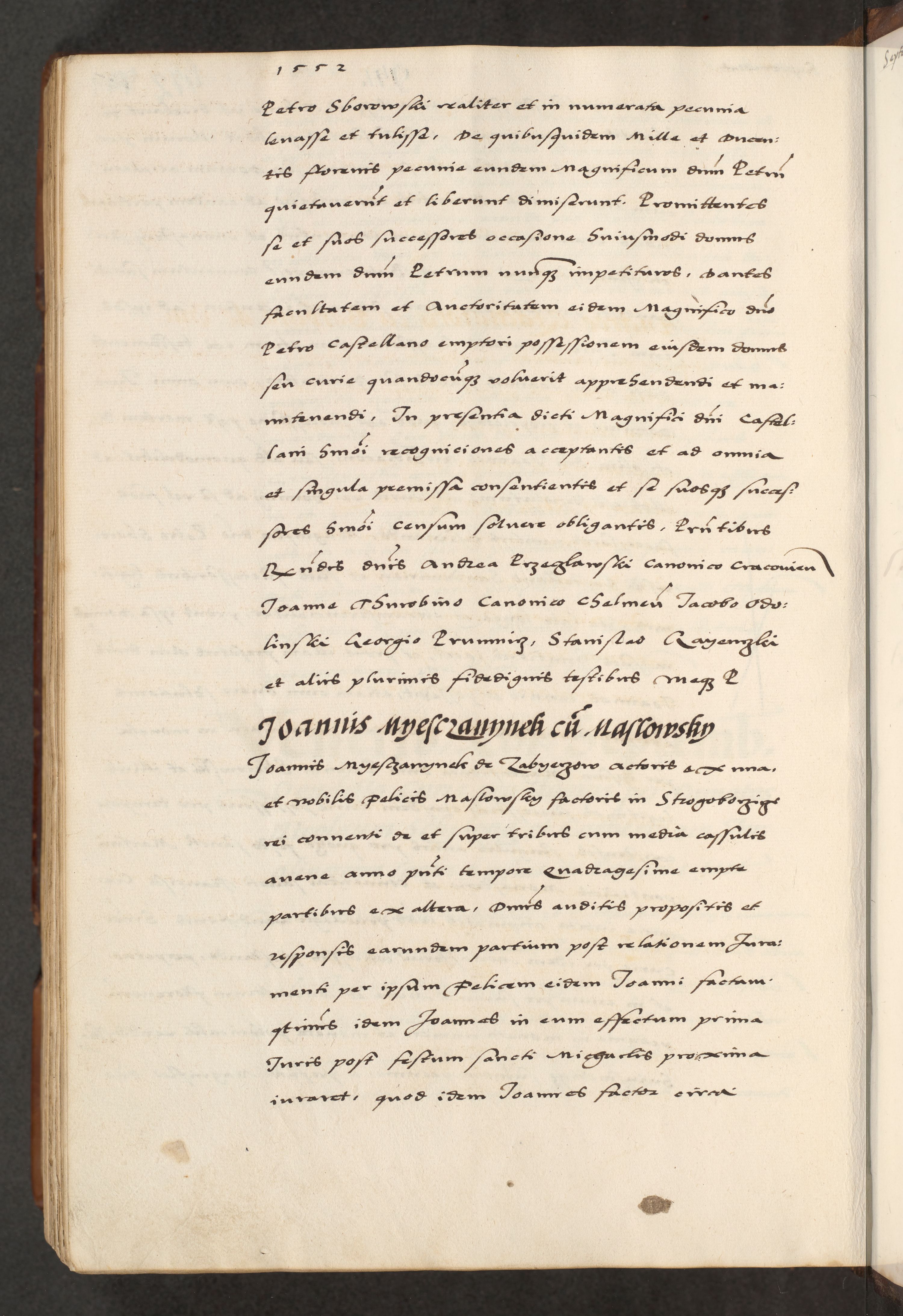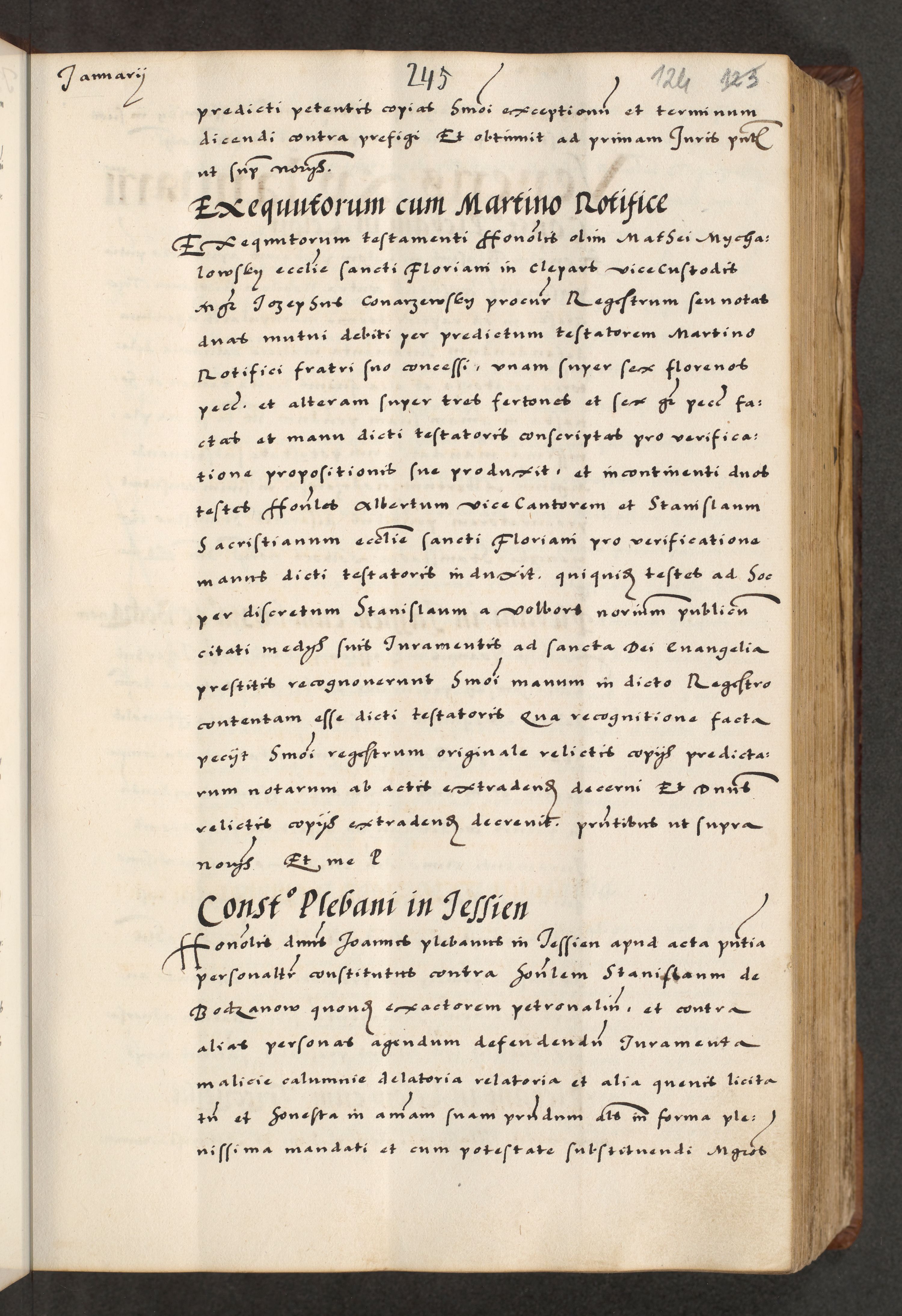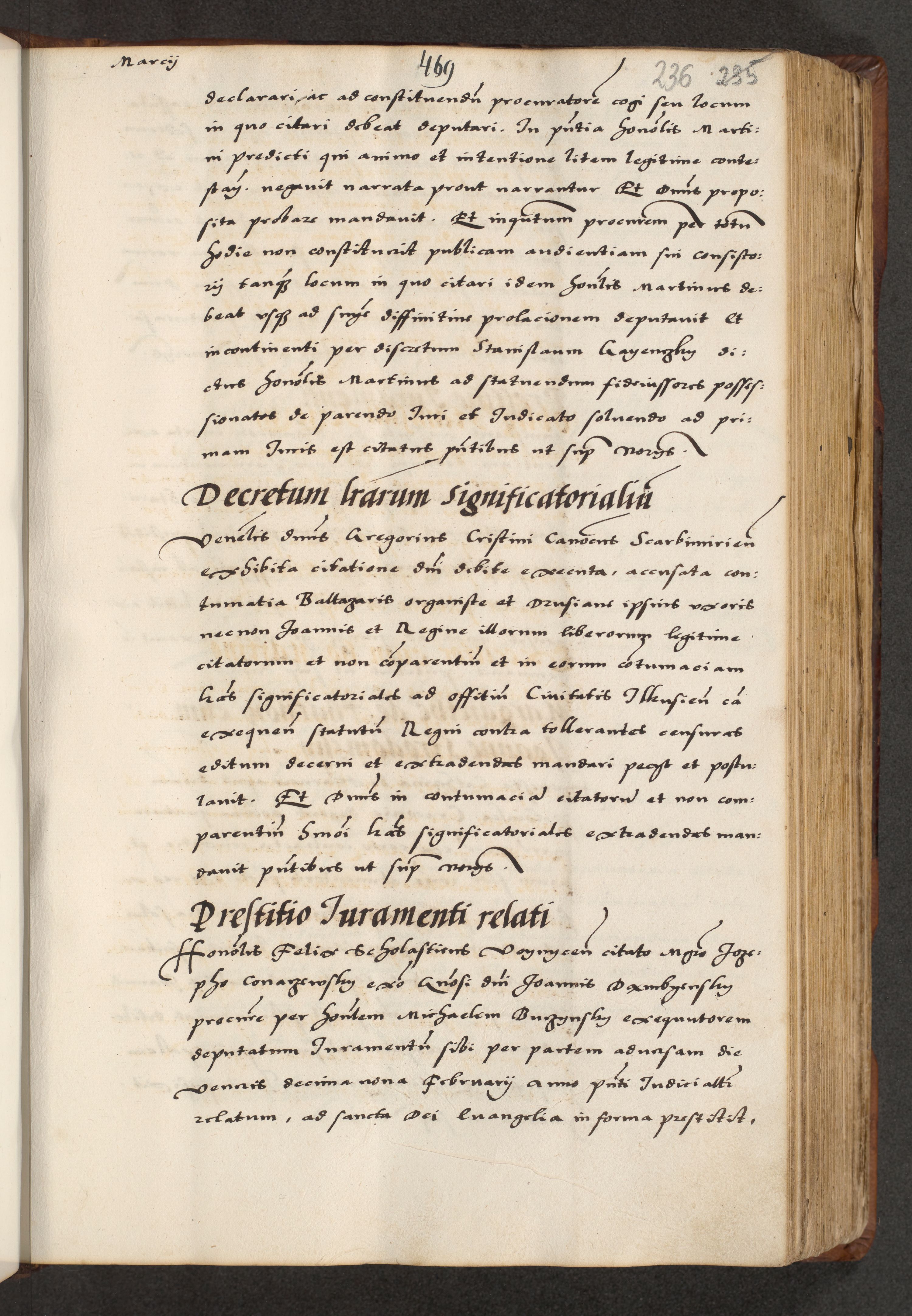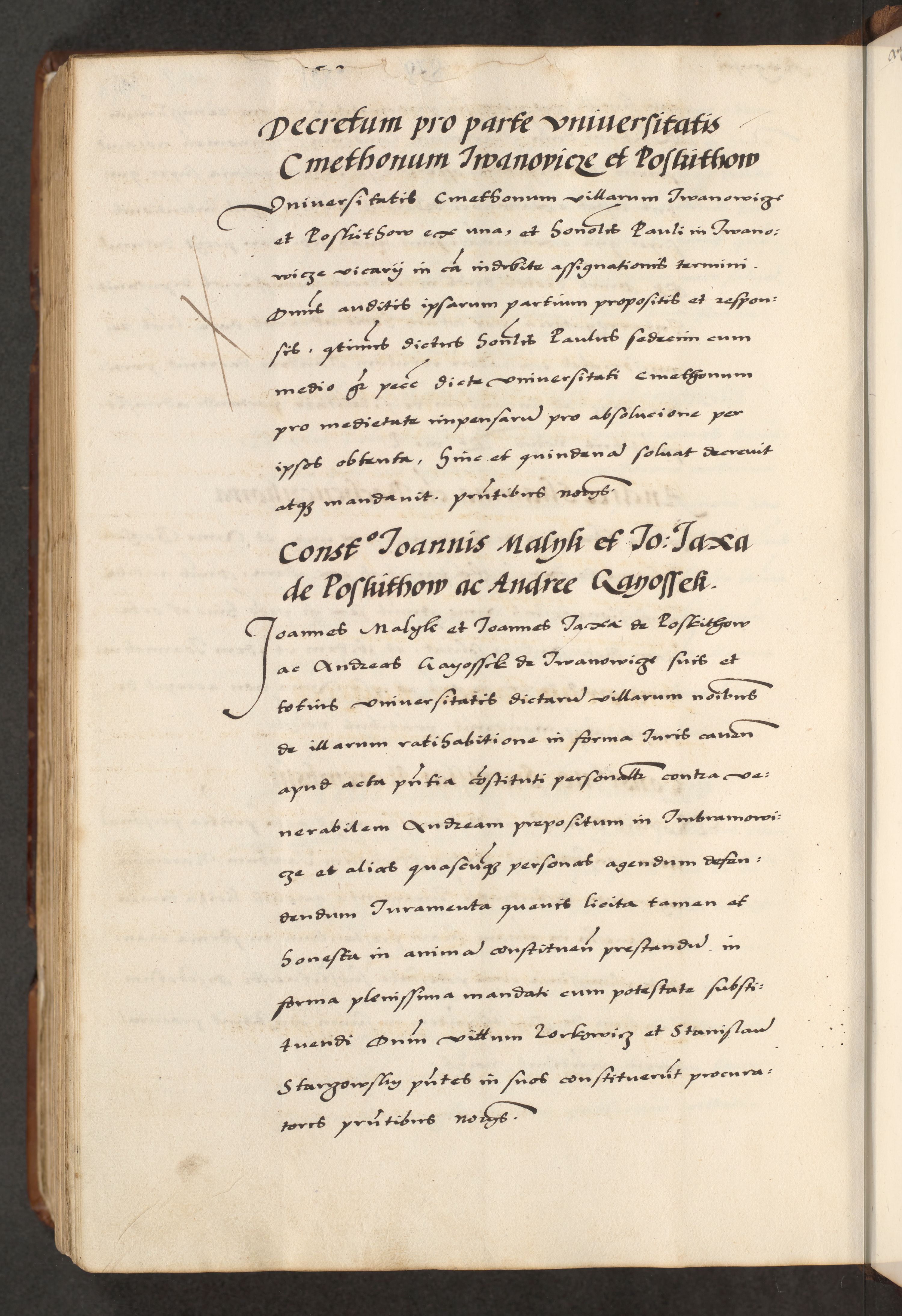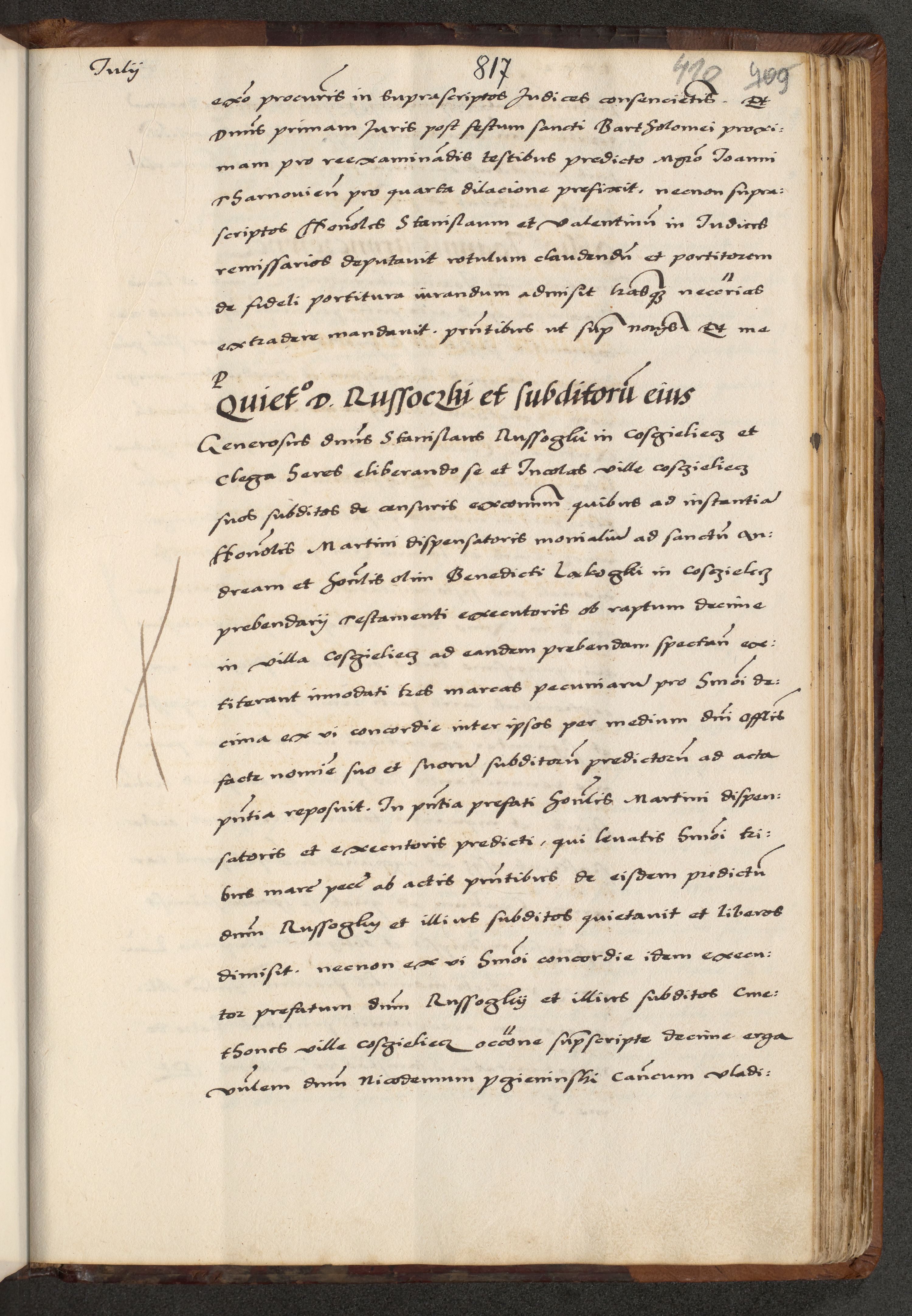 [A]cta actorum causarum, sententiarum tam diffinitivarum quam interloquutoriarum, obligationum, constitutionum et contractuum coram reverendo patre domino Petro Porembski preposito Osvieczimensi, canonico et officiali generali Cracoviensi de anno Domini millesimo quingentesimo quinguagesimo primo, cuius indictio est nona, pontificatus sanctissimi in Christo patris et domini nostri domini Juliii divina providencia pape tercii, anno secundo, a die et mense infrascriptis feliciter continiantur