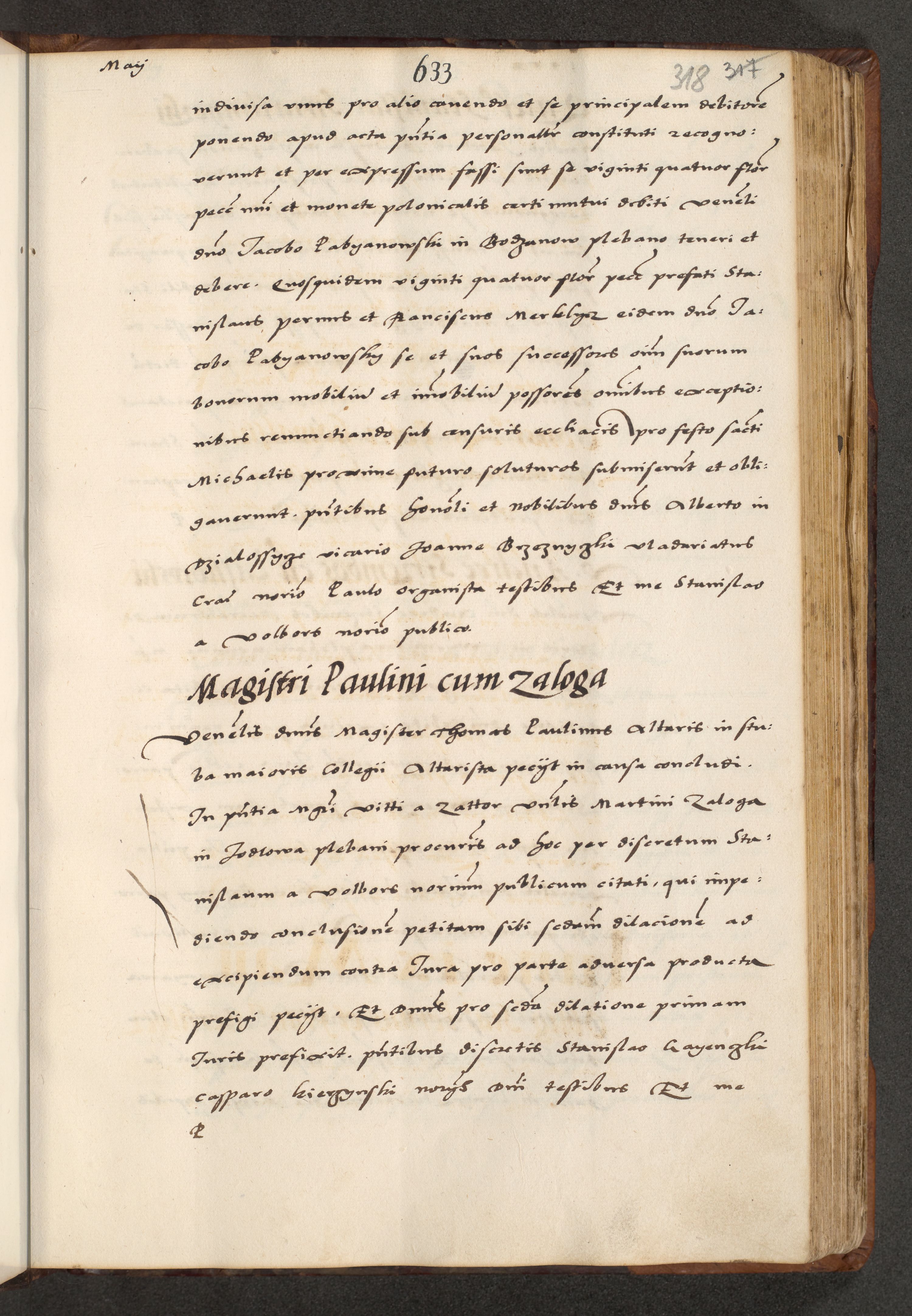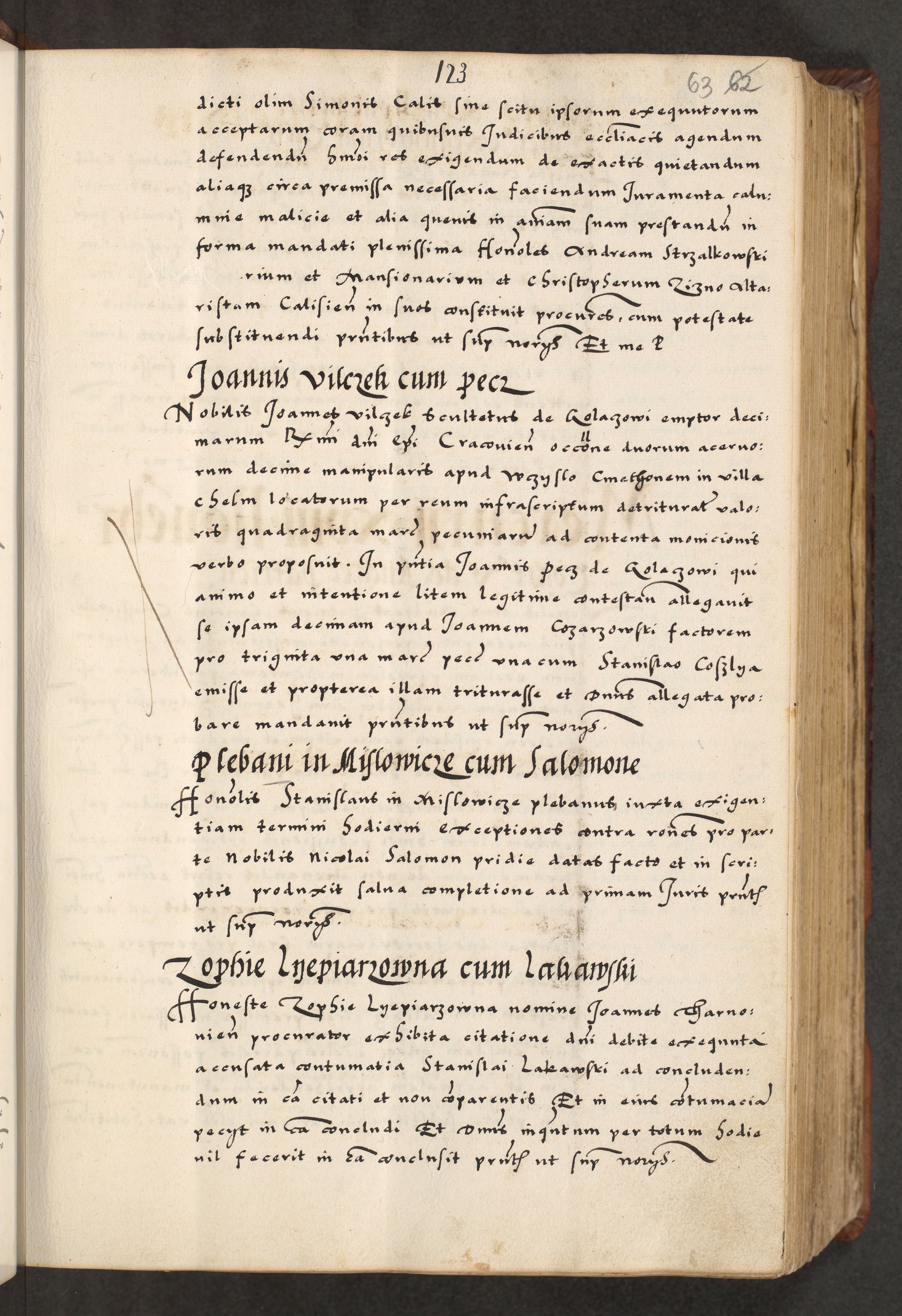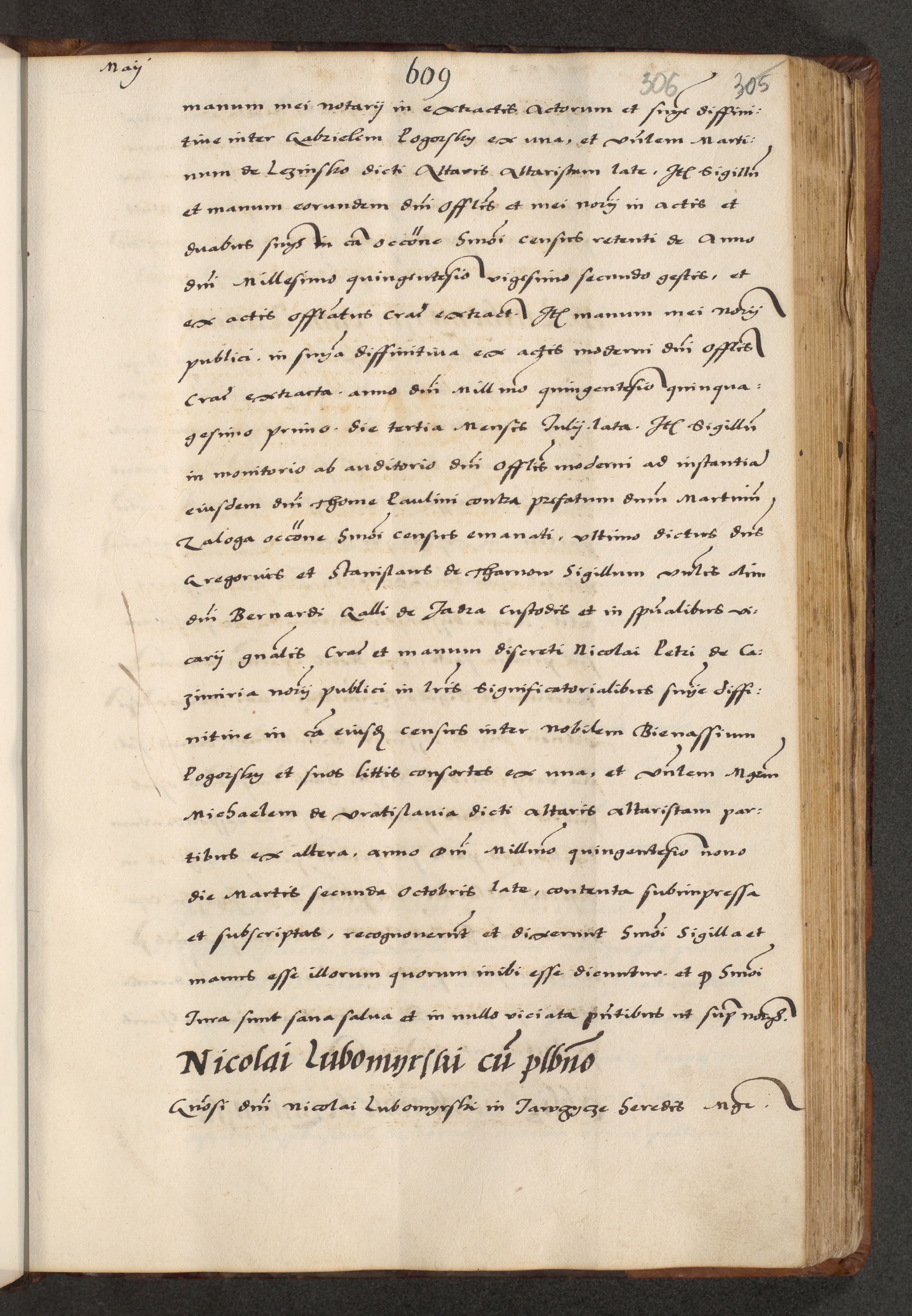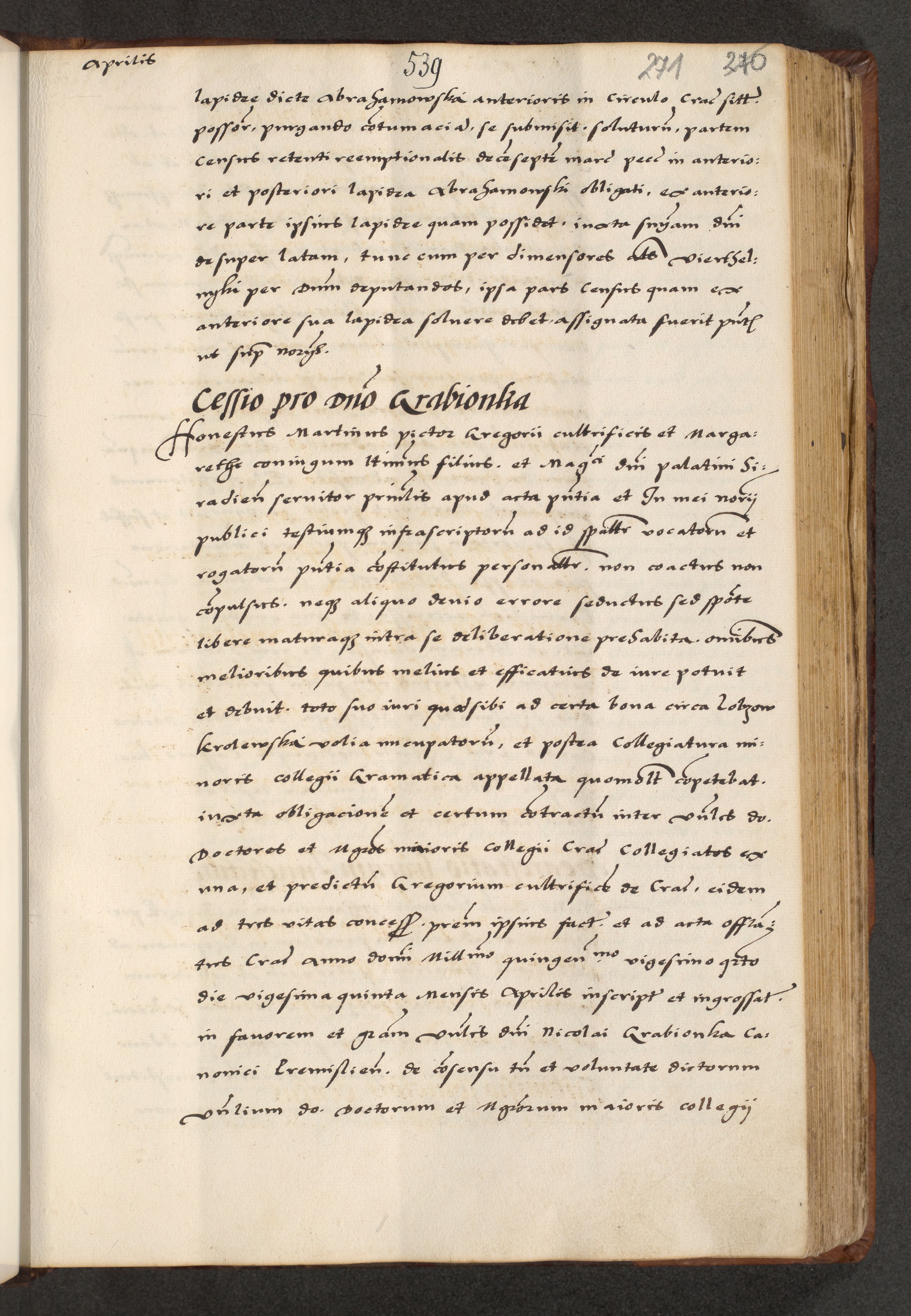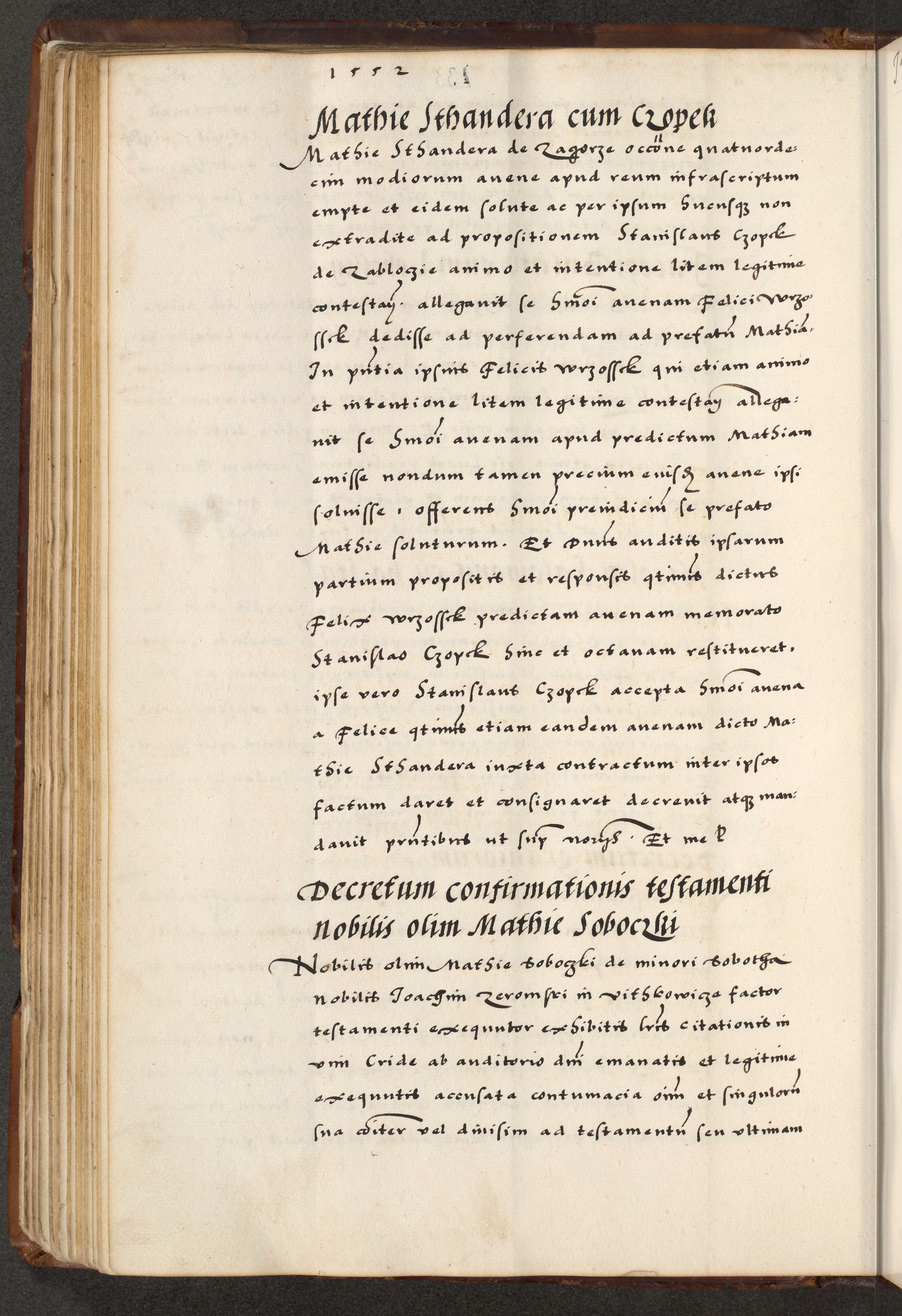 [A]cta actorum causarum, sententiarum tam diffinitivarum quam interloquutoriarum, obligationum, constitutionum et contractuum coram reverendo patre domino Petro Porembski preposito Osvieczimensi, canonico et officiali generali Cracoviensi de anno Domini millesimo quingentesimo quinguagesimo primo, cuius indictio est nona, pontificatus sanctissimi in Christo patris et domini nostri domini Juliii divina providencia pape tercii, anno secundo, a die et mense infrascriptis feliciter continiantur
