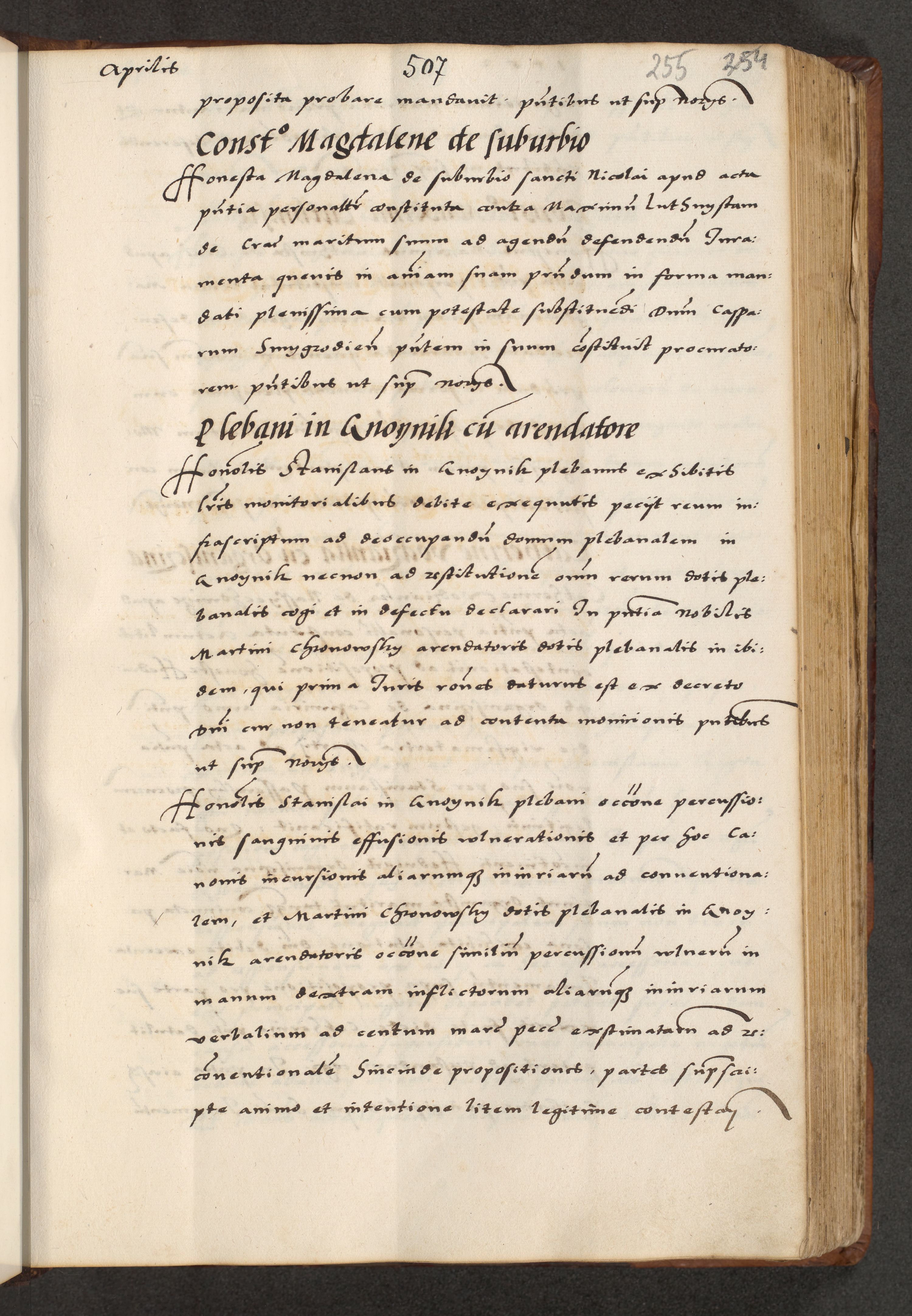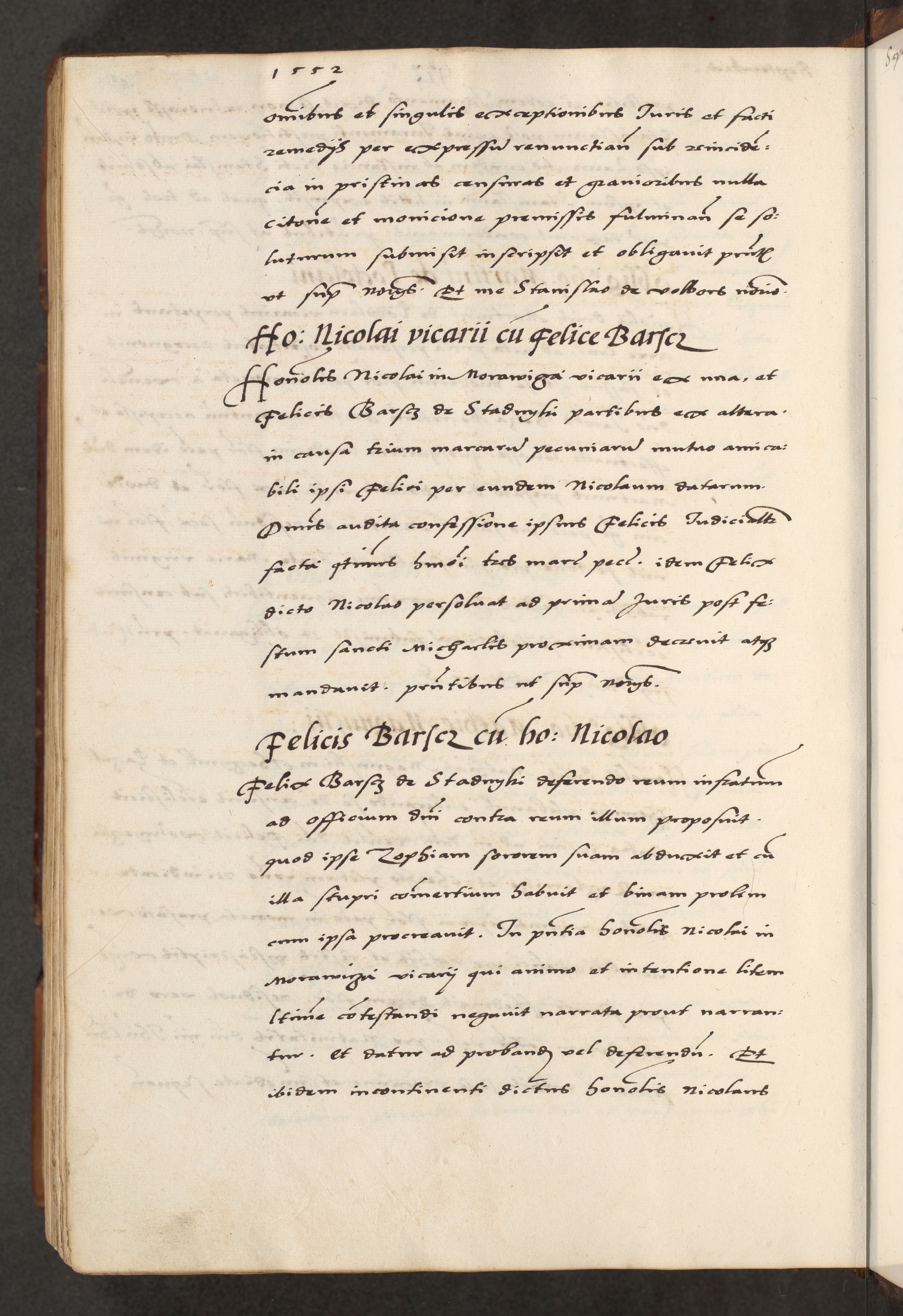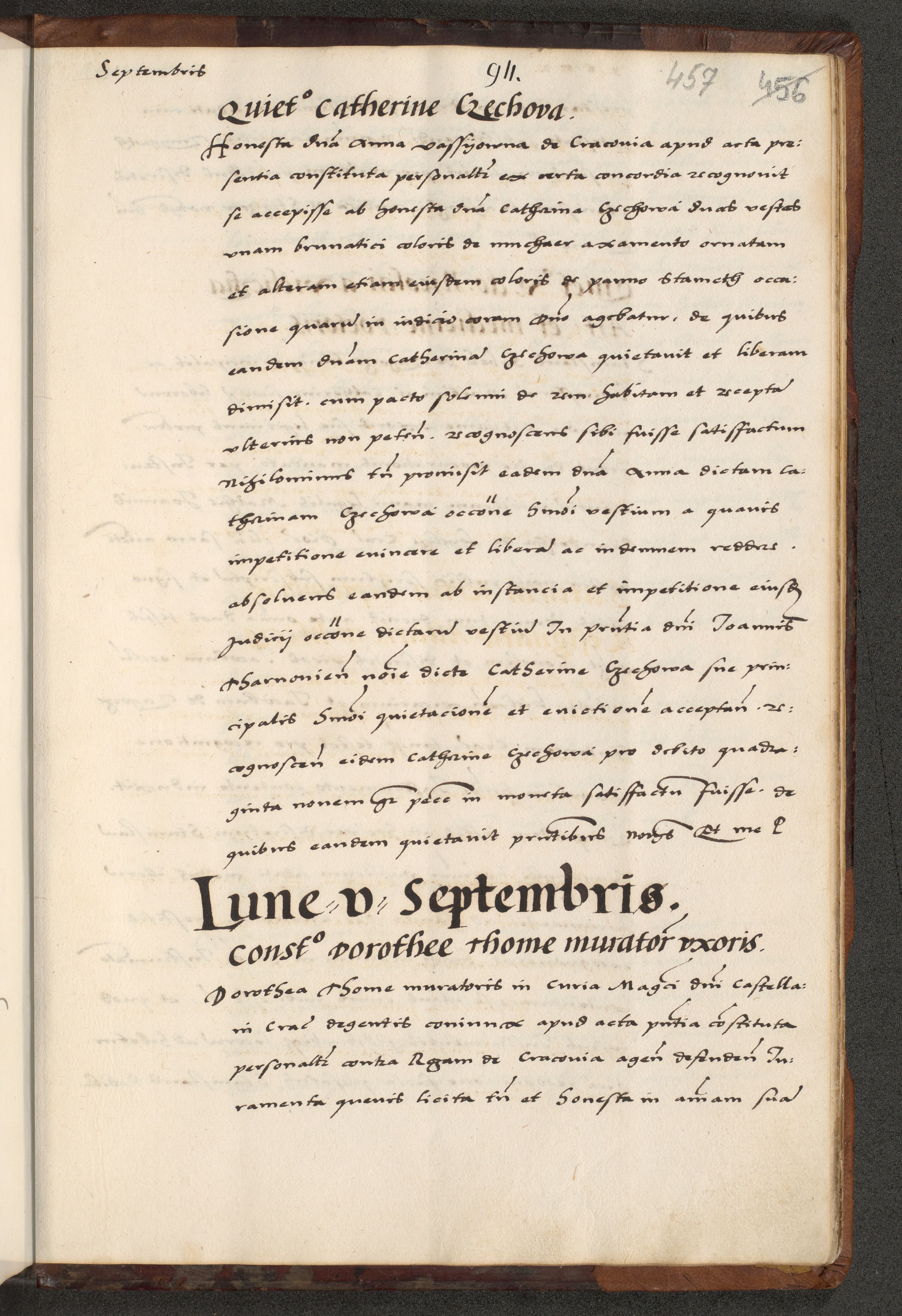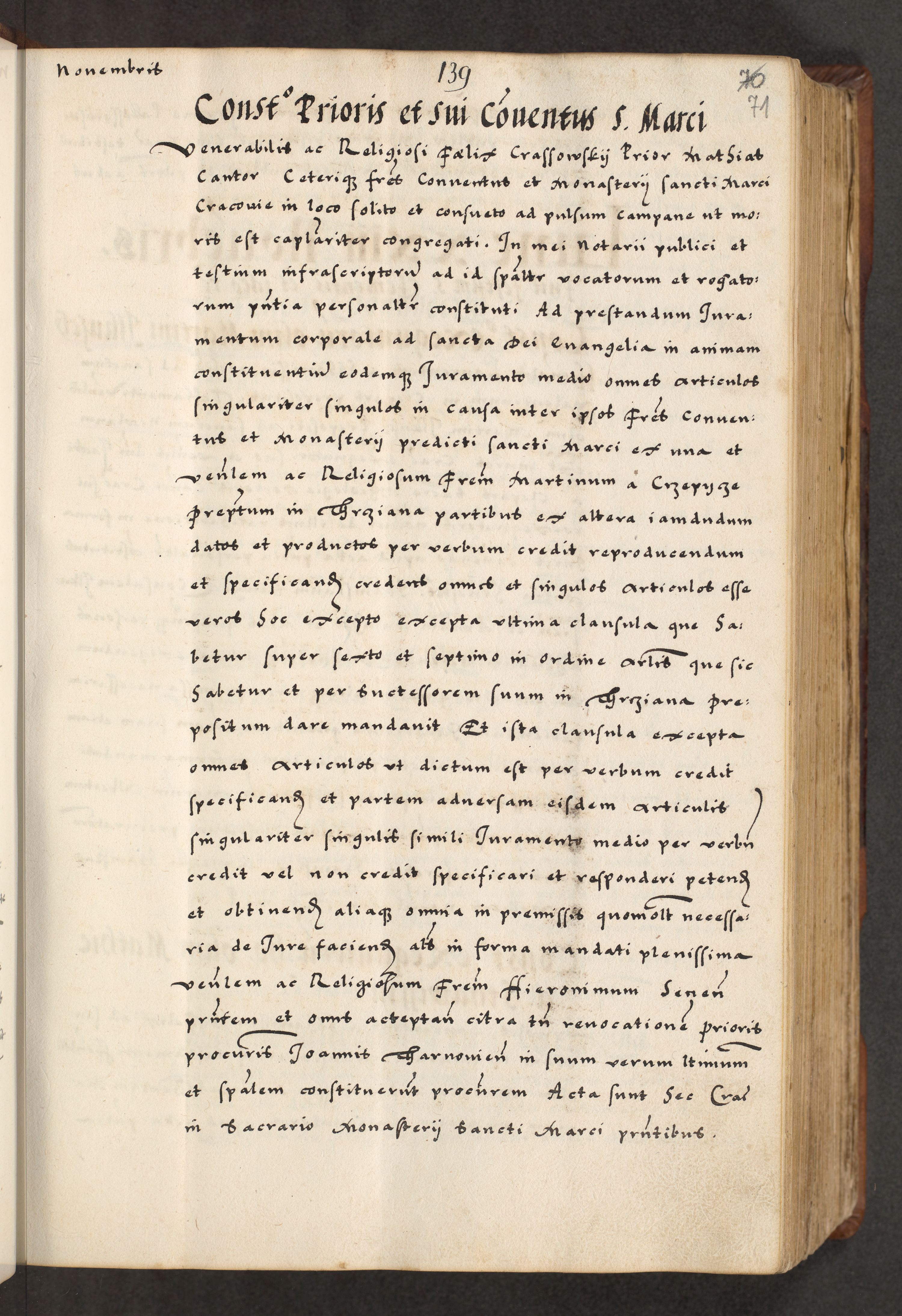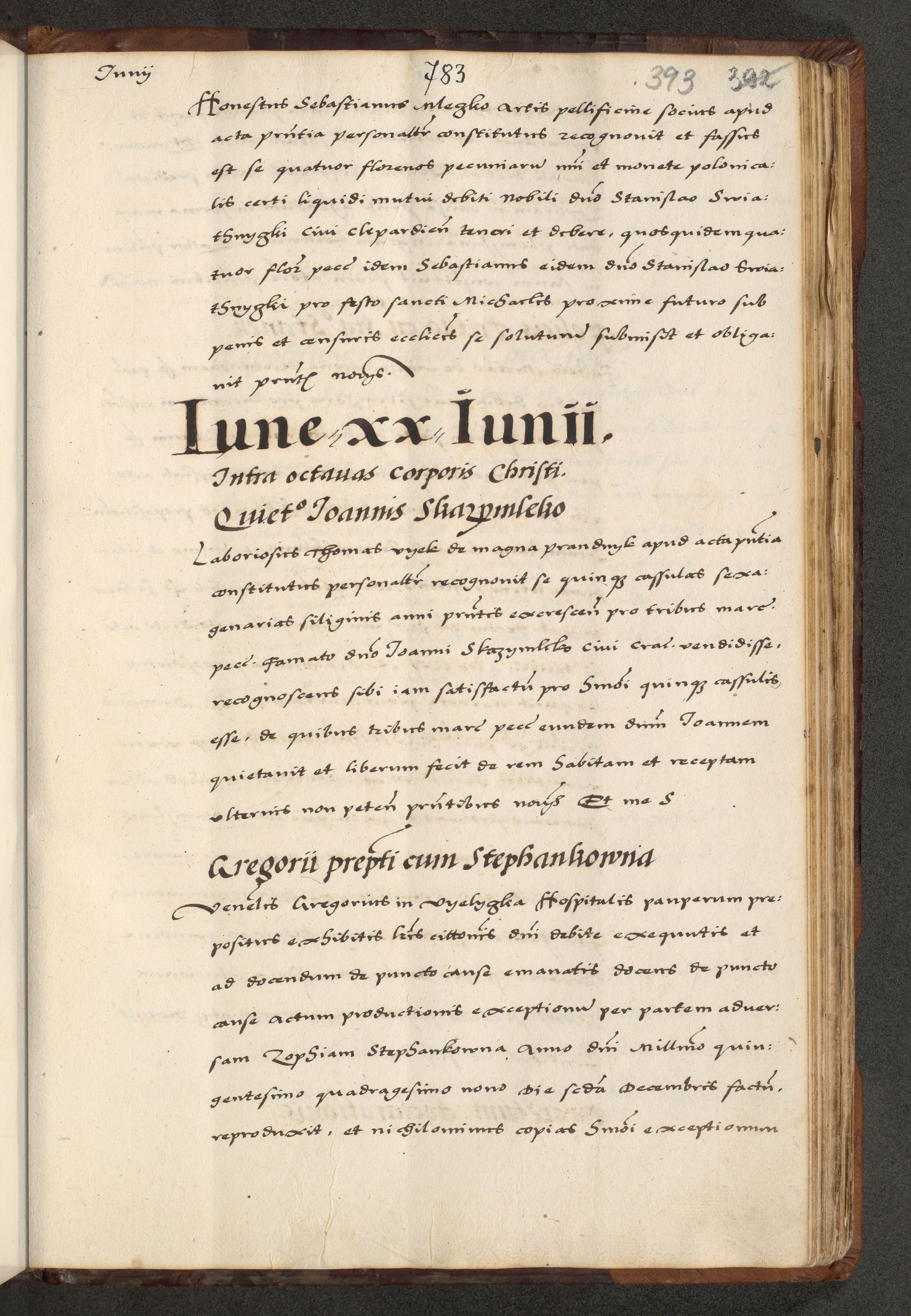 [A]cta actorum causarum, sententiarum tam diffinitivarum quam interloquutoriarum, obligationum, constitutionum et contractuum coram reverendo patre domino Petro Porembski preposito Osvieczimensi, canonico et officiali generali Cracoviensi de anno Domini millesimo quingentesimo quinguagesimo primo, cuius indictio est nona, pontificatus sanctissimi in Christo patris et domini nostri domini Juliii divina providencia pape tercii, anno secundo, a die et mense infrascriptis feliciter continiantur