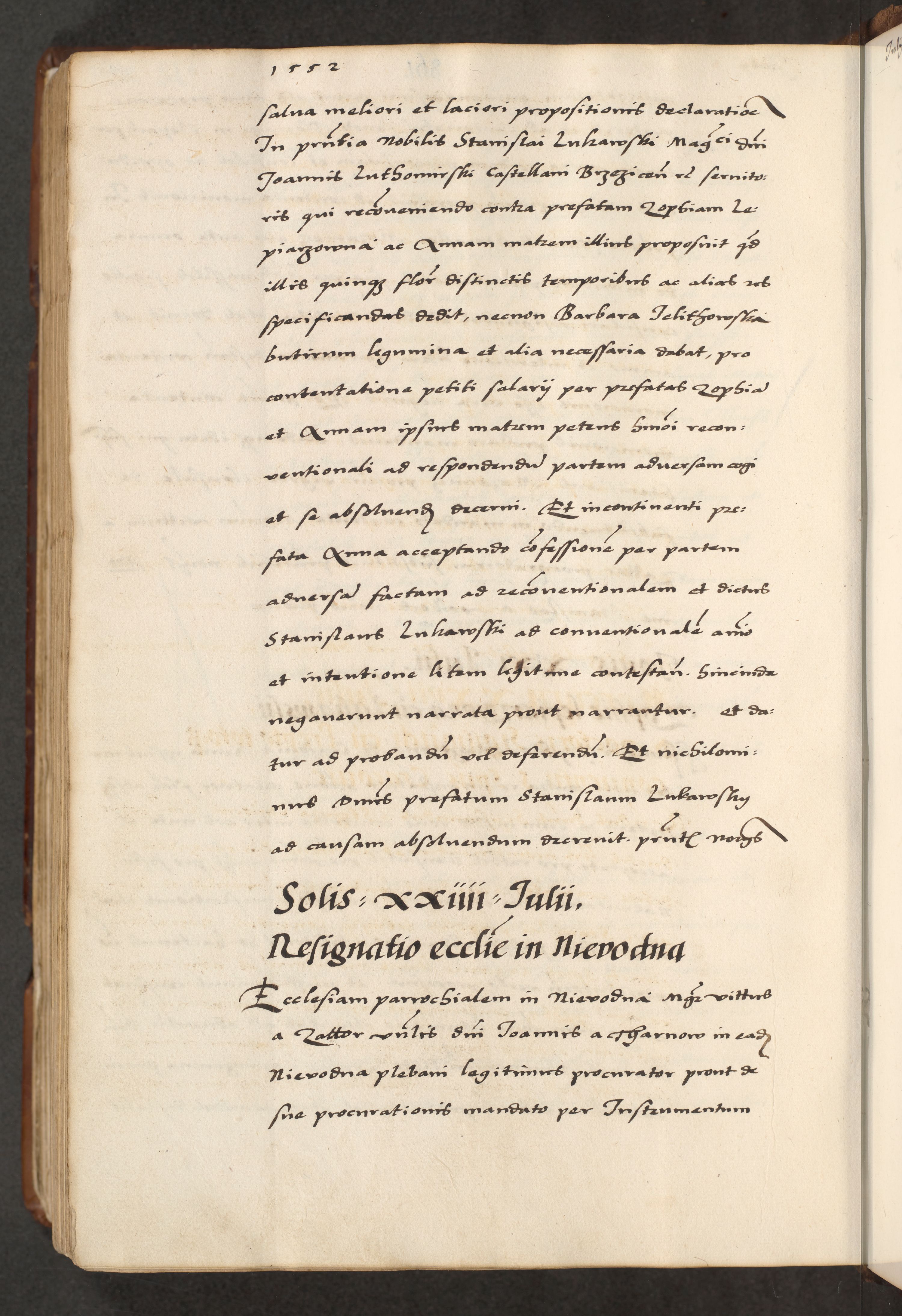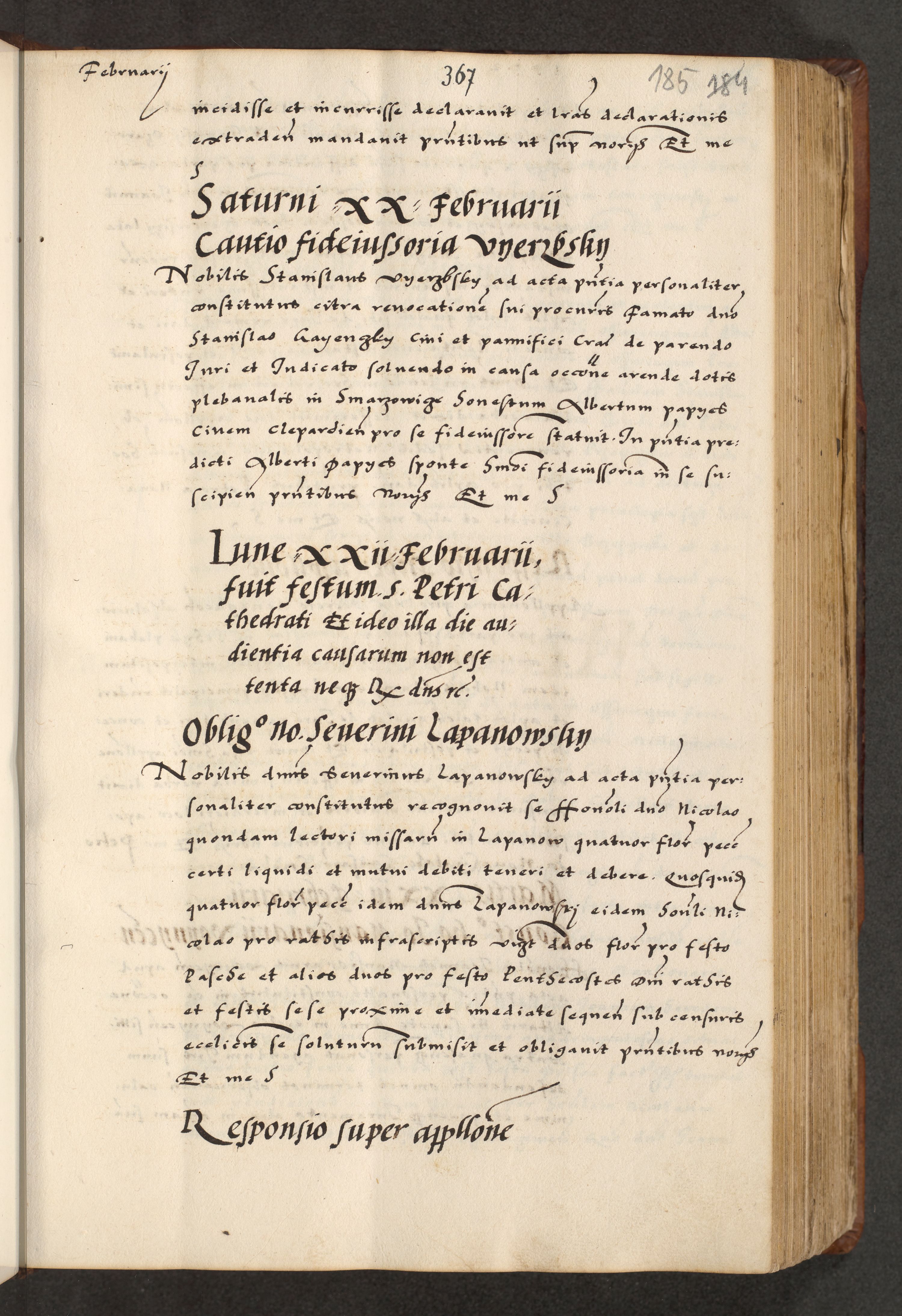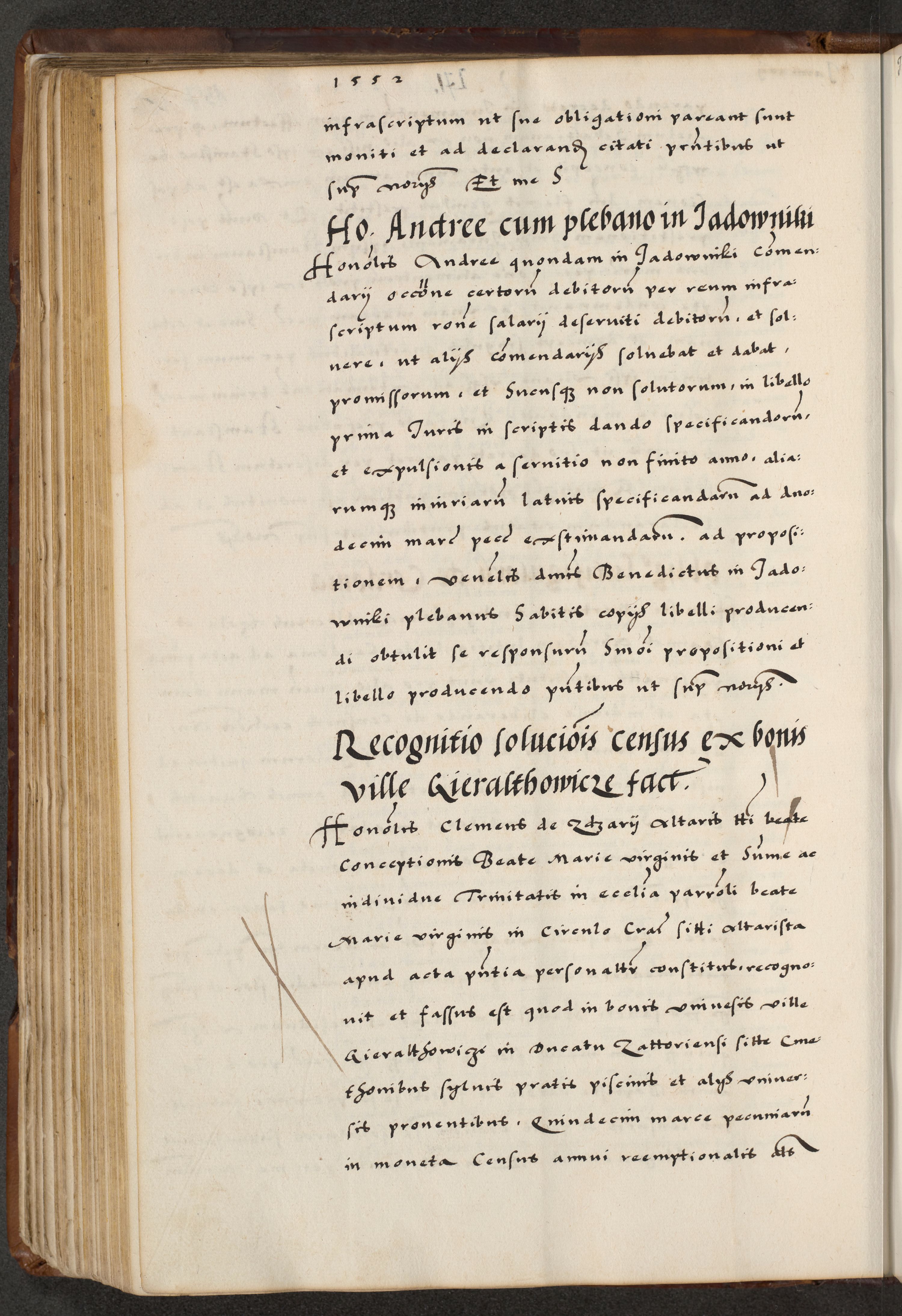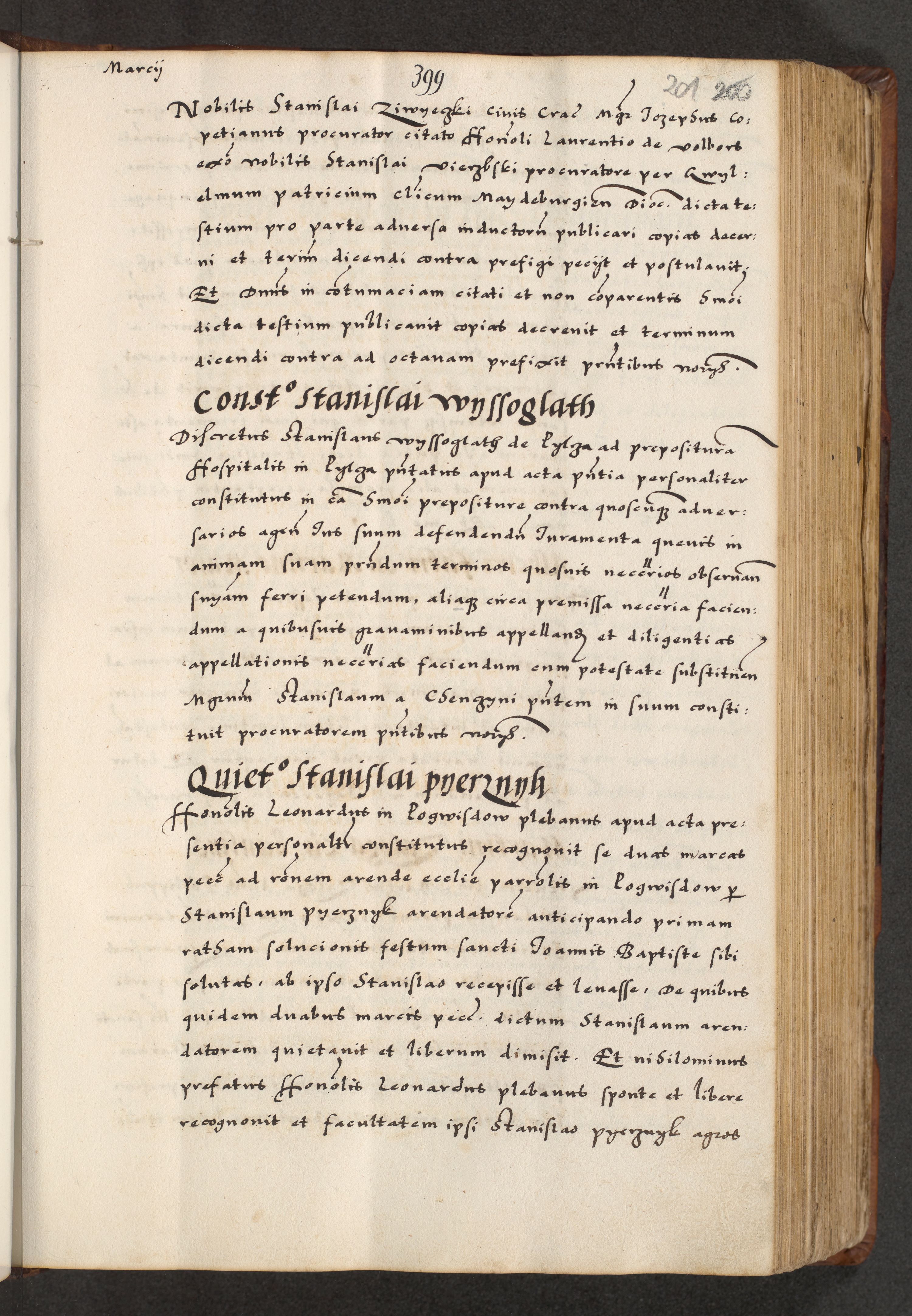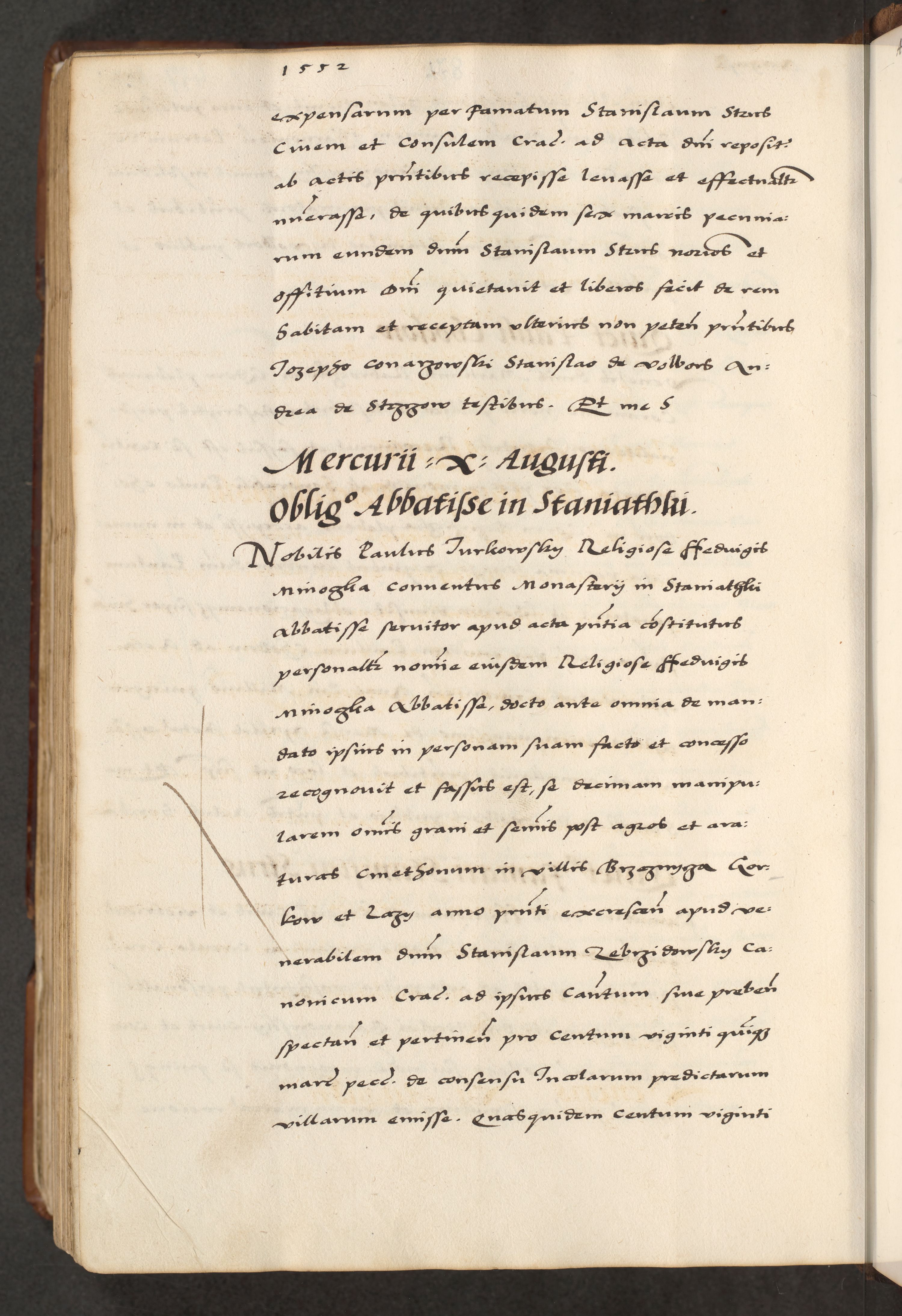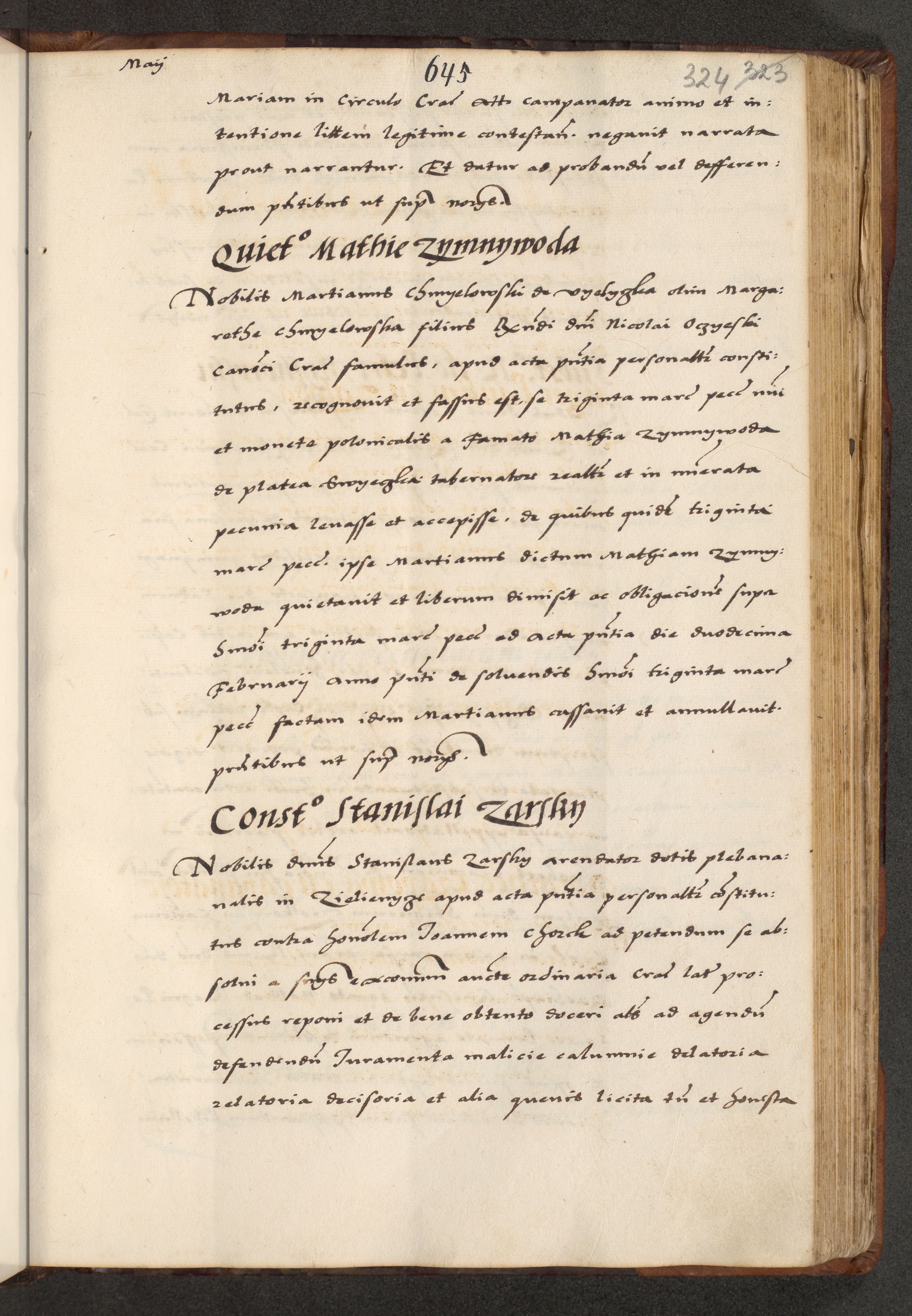 [A]cta actorum causarum, sententiarum tam diffinitivarum quam interloquutoriarum, obligationum, constitutionum et contractuum coram reverendo patre domino Petro Porembski preposito Osvieczimensi, canonico et officiali generali Cracoviensi de anno Domini millesimo quingentesimo quinguagesimo primo, cuius indictio est nona, pontificatus sanctissimi in Christo patris et domini nostri domini Juliii divina providencia pape tercii, anno secundo, a die et mense infrascriptis feliciter continiantur