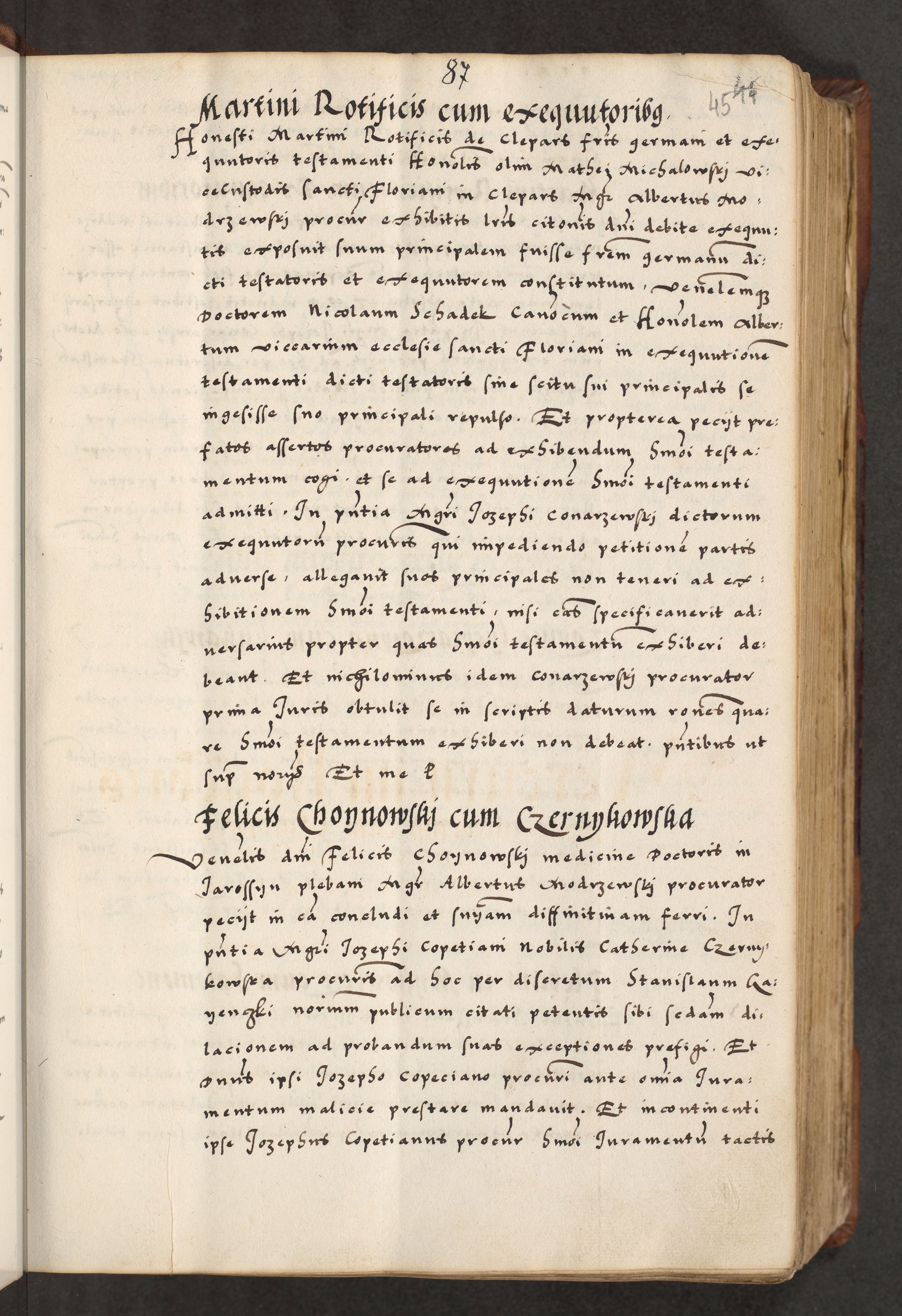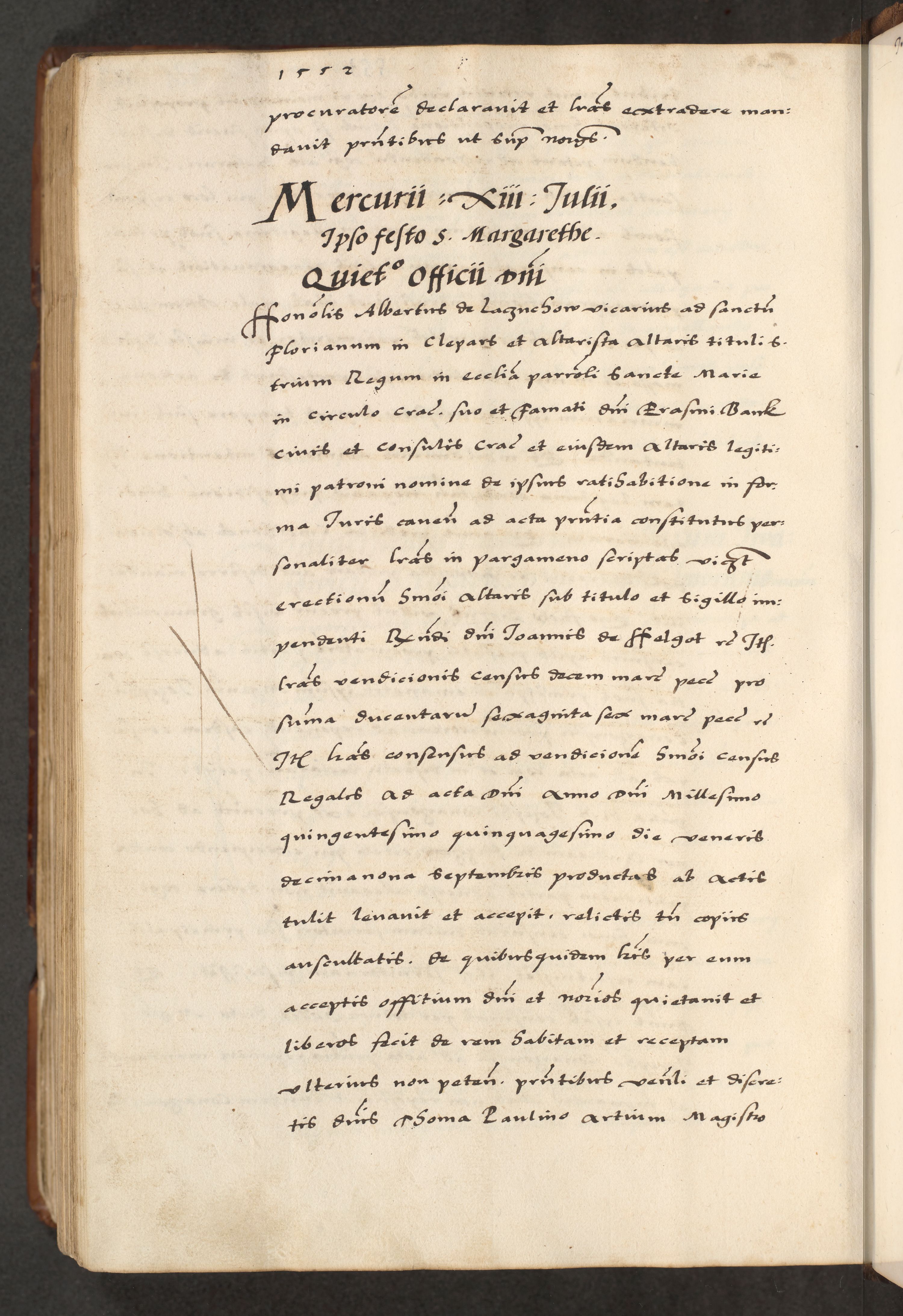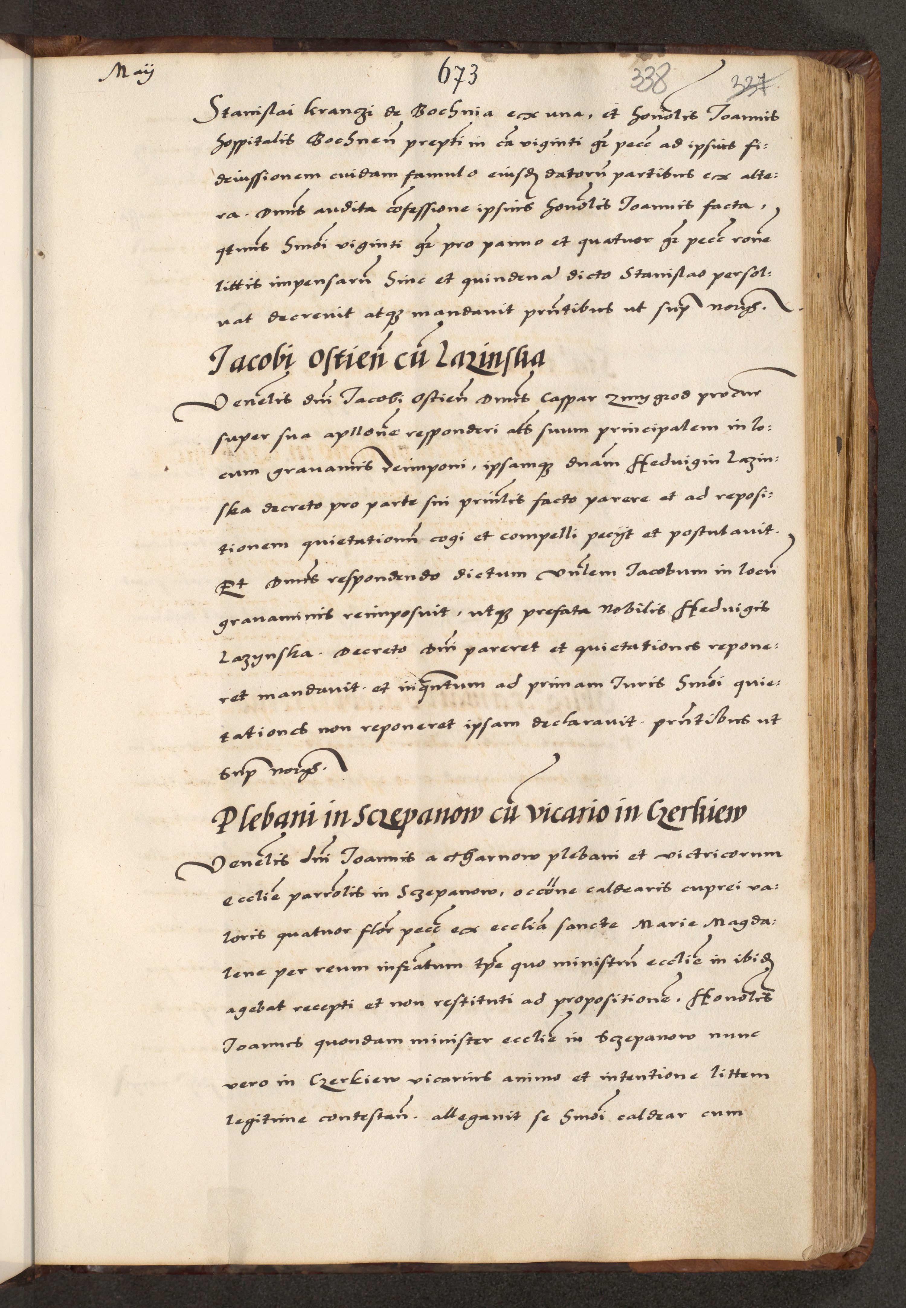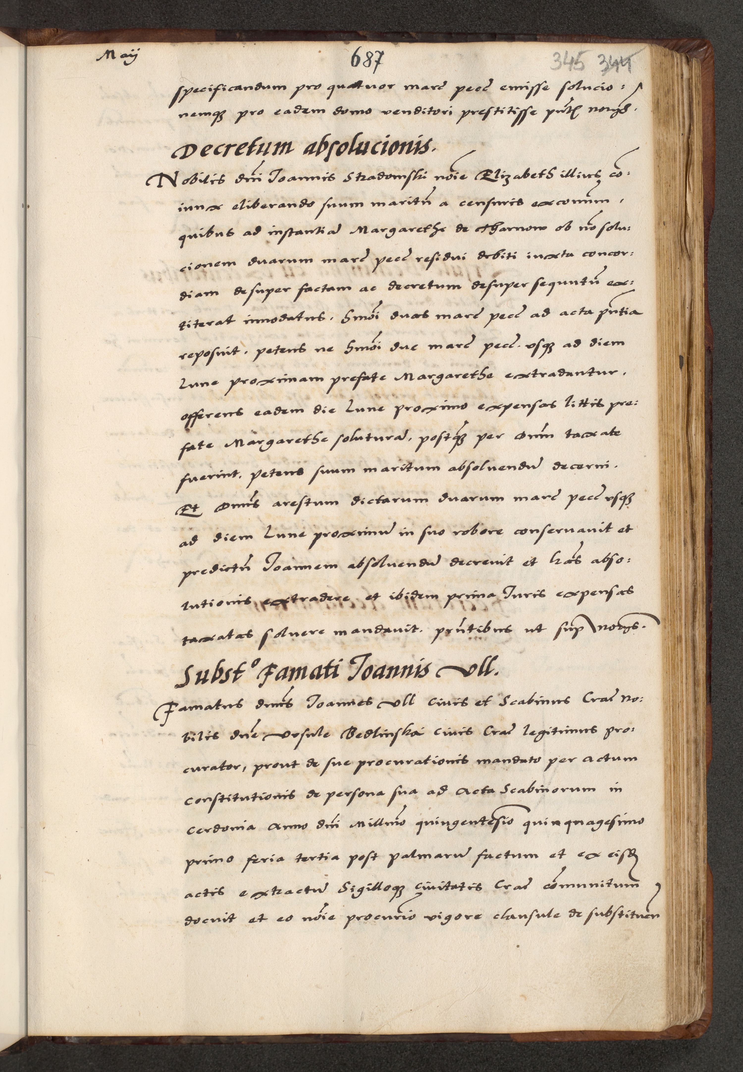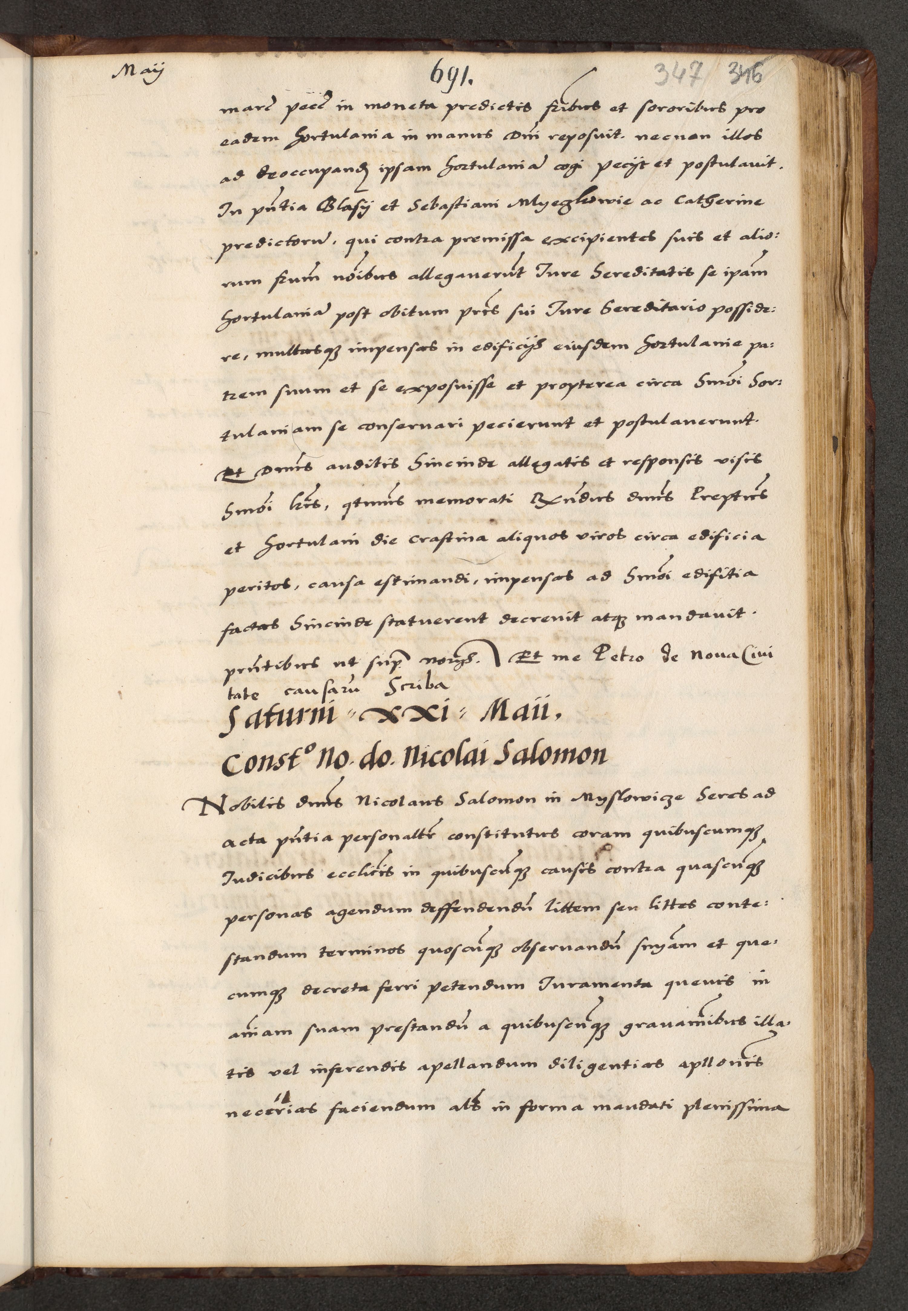 [A]cta actorum causarum, sententiarum tam diffinitivarum quam interloquutoriarum, obligationum, constitutionum et contractuum coram reverendo patre domino Petro Porembski preposito Osvieczimensi, canonico et officiali generali Cracoviensi de anno Domini millesimo quingentesimo quinguagesimo primo, cuius indictio est nona, pontificatus sanctissimi in Christo patris et domini nostri domini Juliii divina providencia pape tercii, anno secundo, a die et mense infrascriptis feliciter continiantur