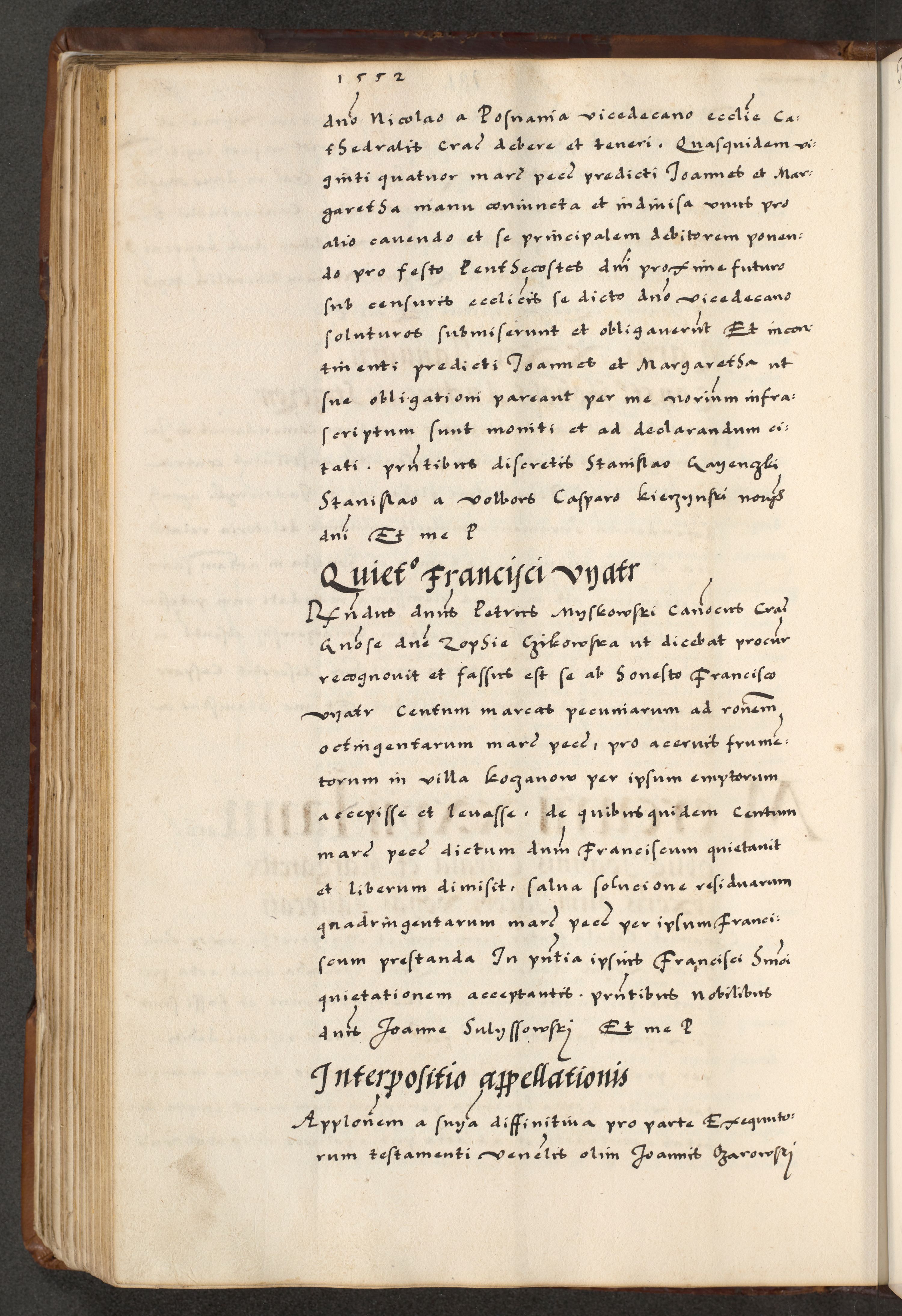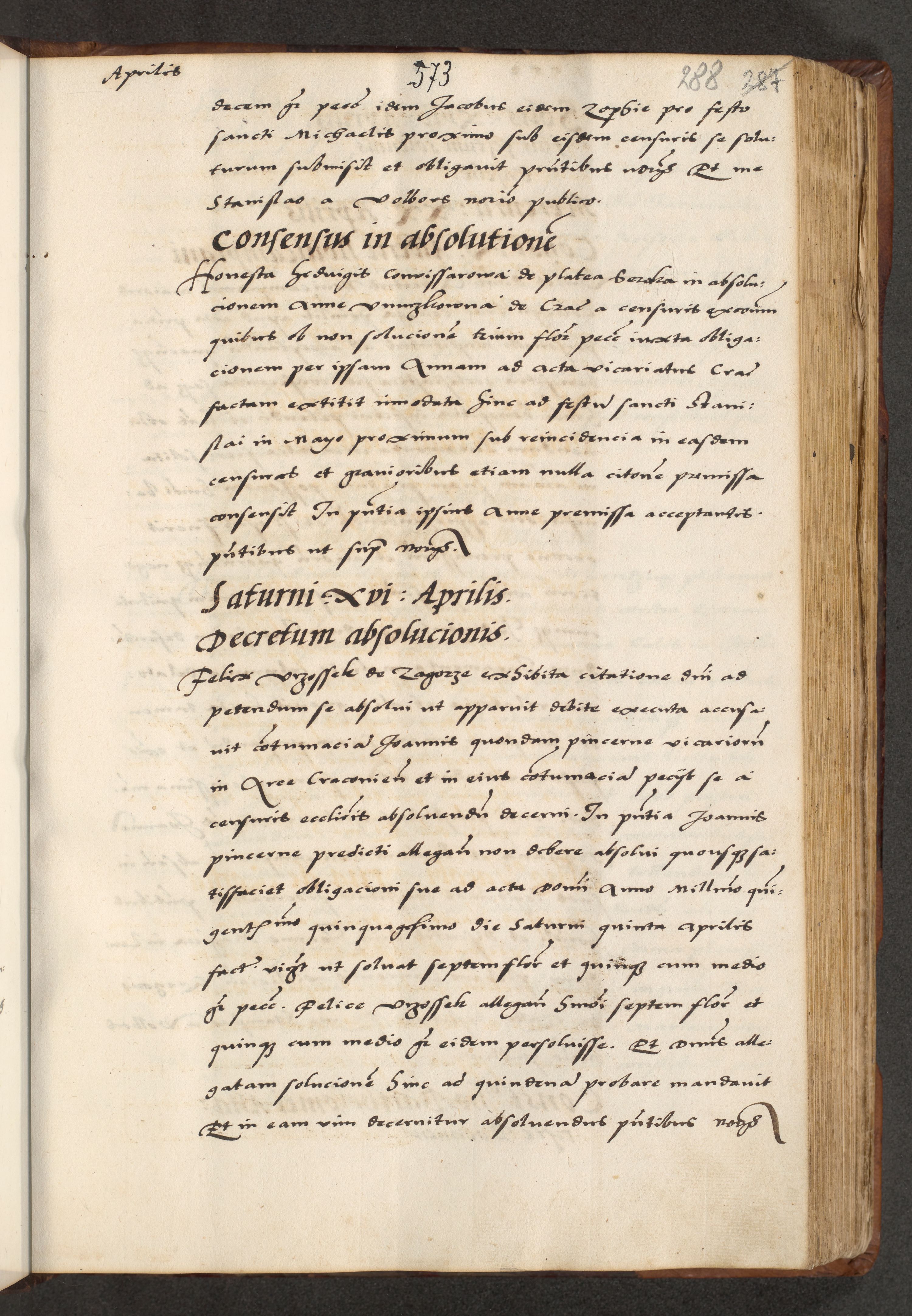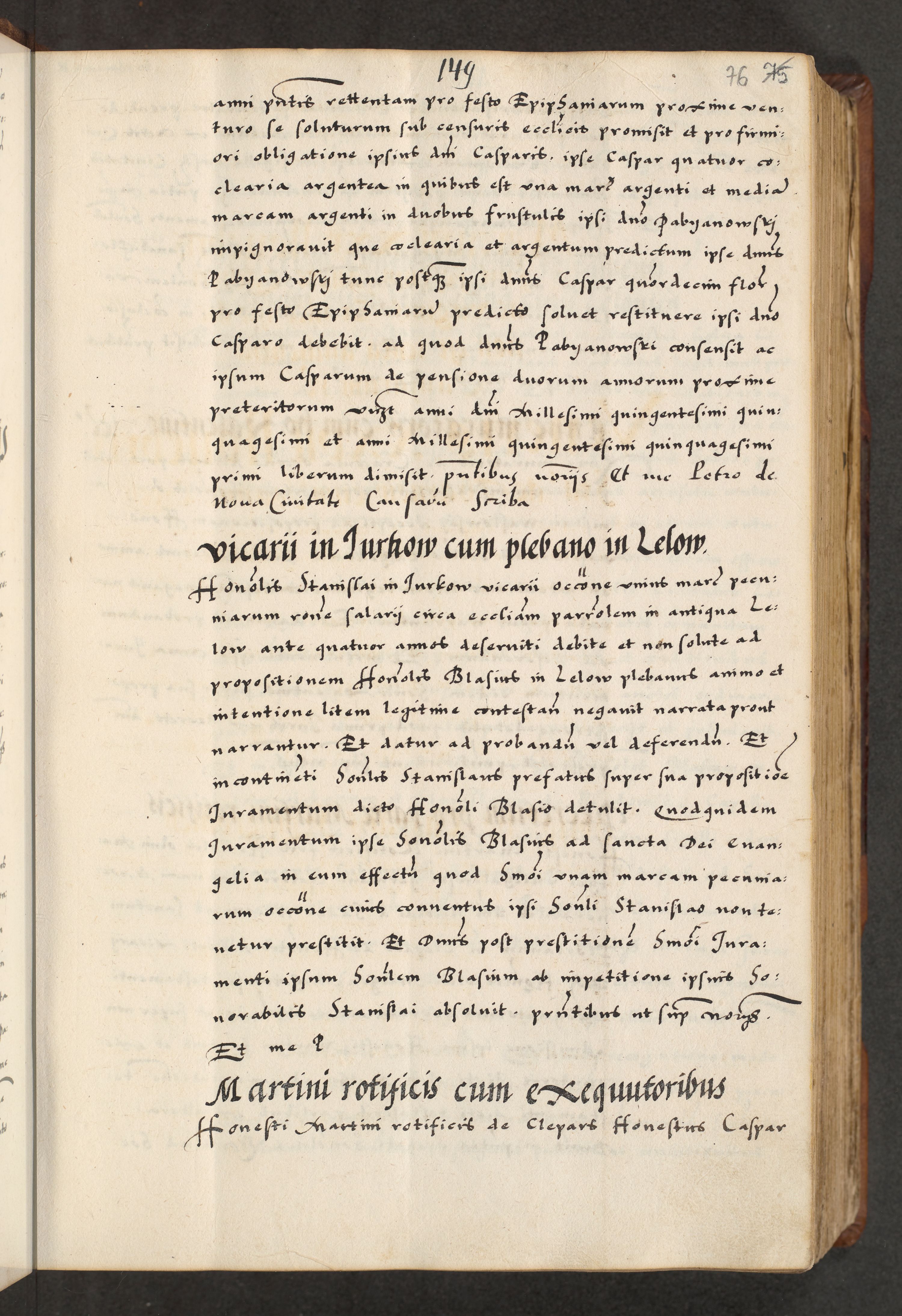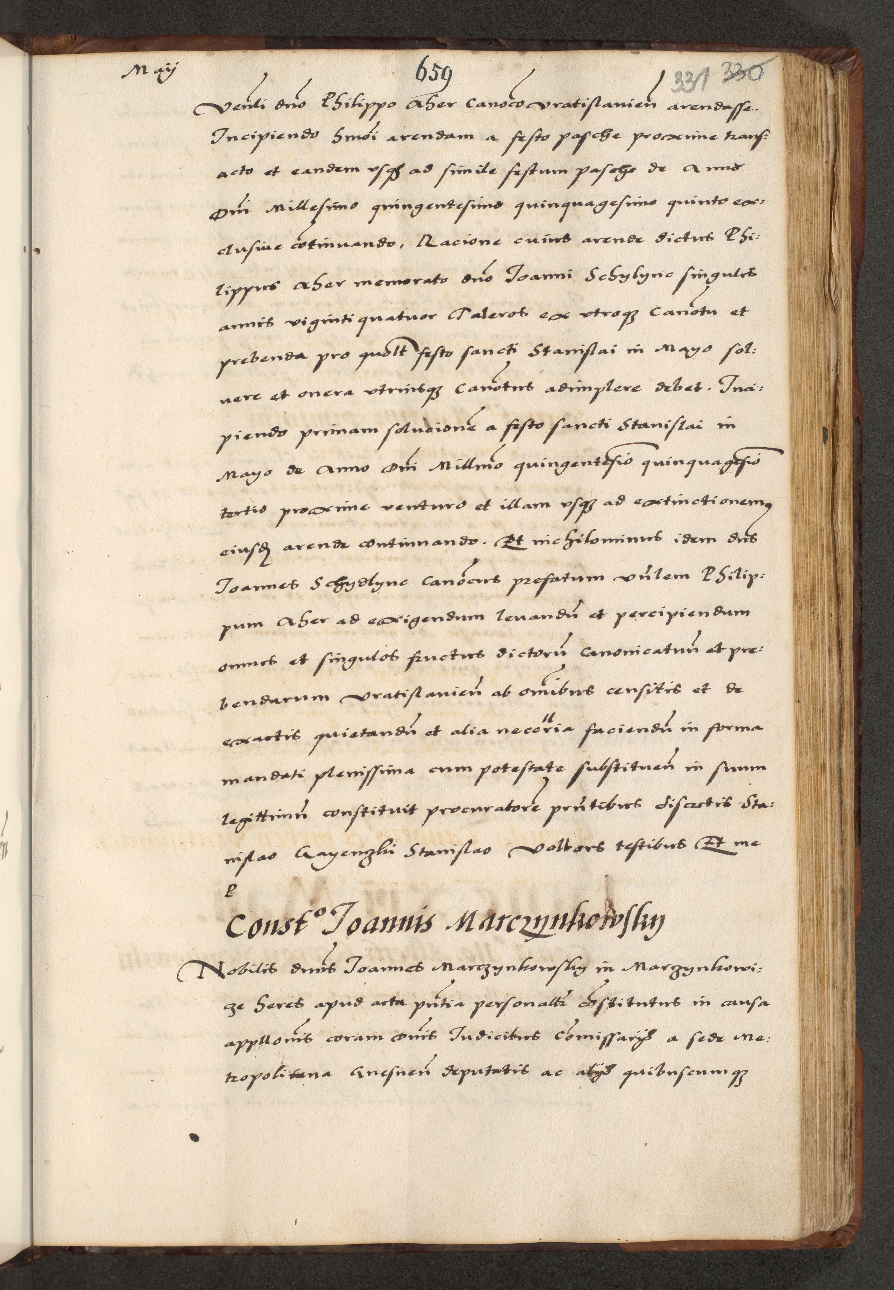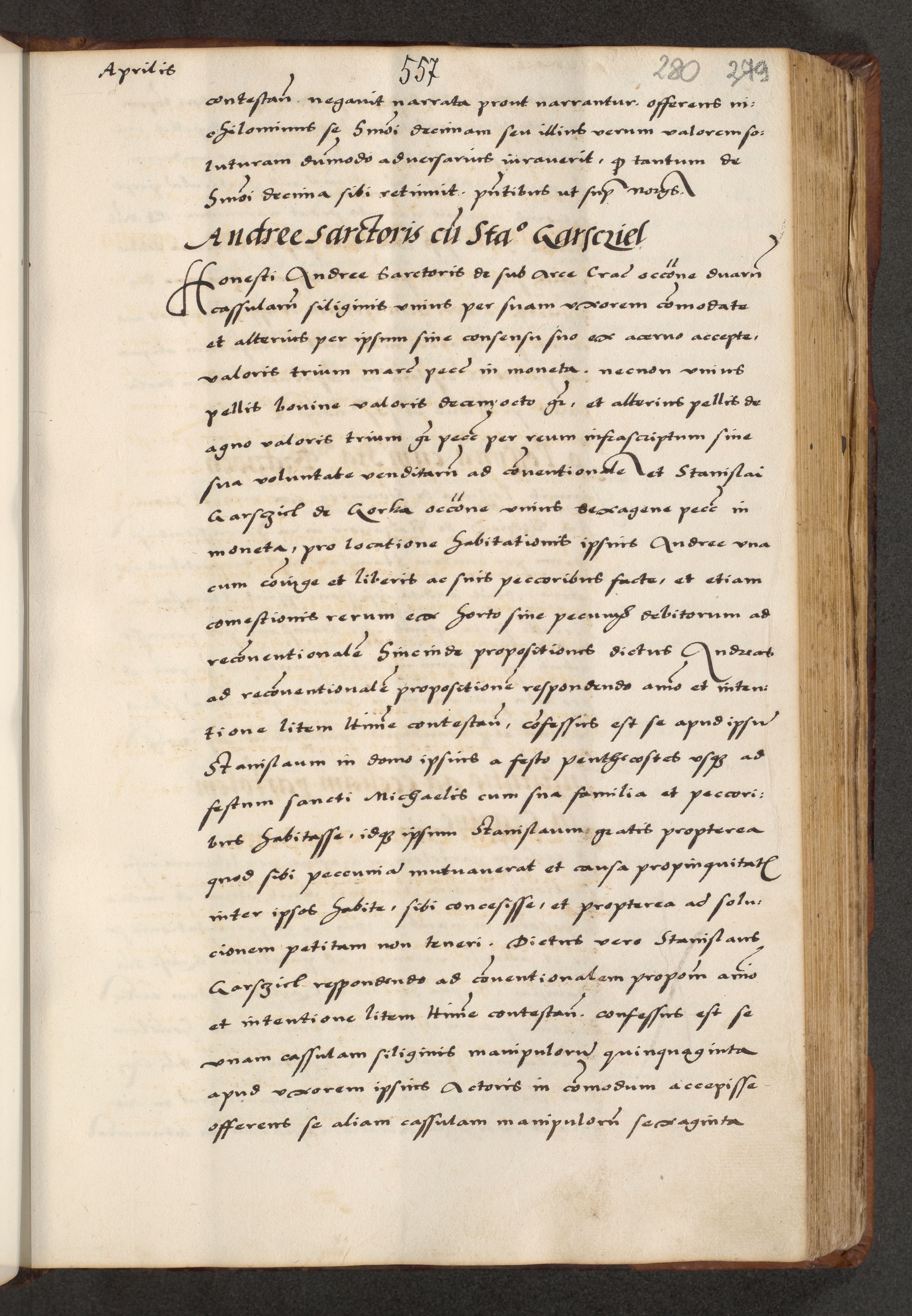 [A]cta actorum causarum, sententiarum tam diffinitivarum quam interloquutoriarum, obligationum, constitutionum et contractuum coram reverendo patre domino Petro Porembski preposito Osvieczimensi, canonico et officiali generali Cracoviensi de anno Domini millesimo quingentesimo quinguagesimo primo, cuius indictio est nona, pontificatus sanctissimi in Christo patris et domini nostri domini Juliii divina providencia pape tercii, anno secundo, a die et mense infrascriptis feliciter continiantur