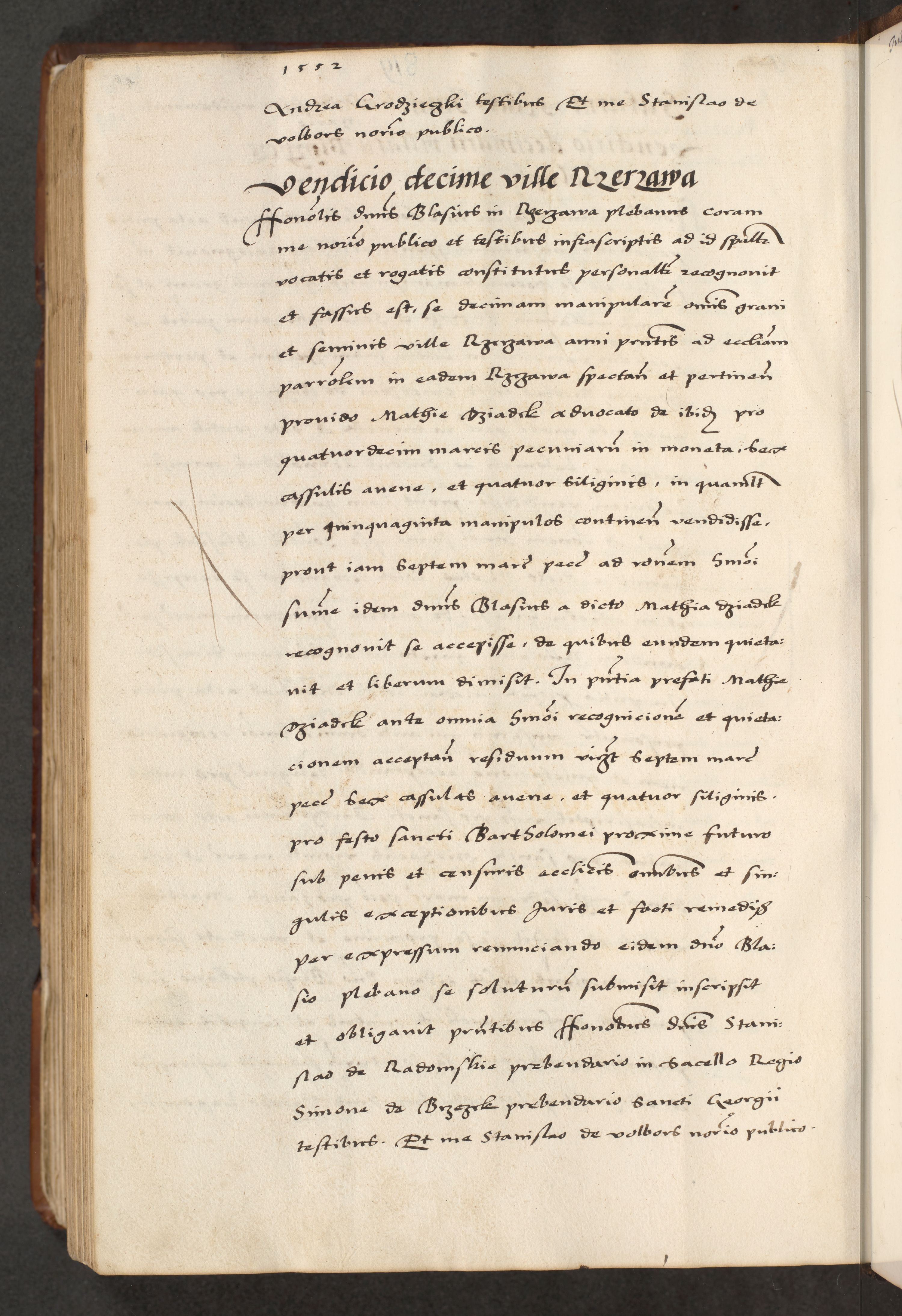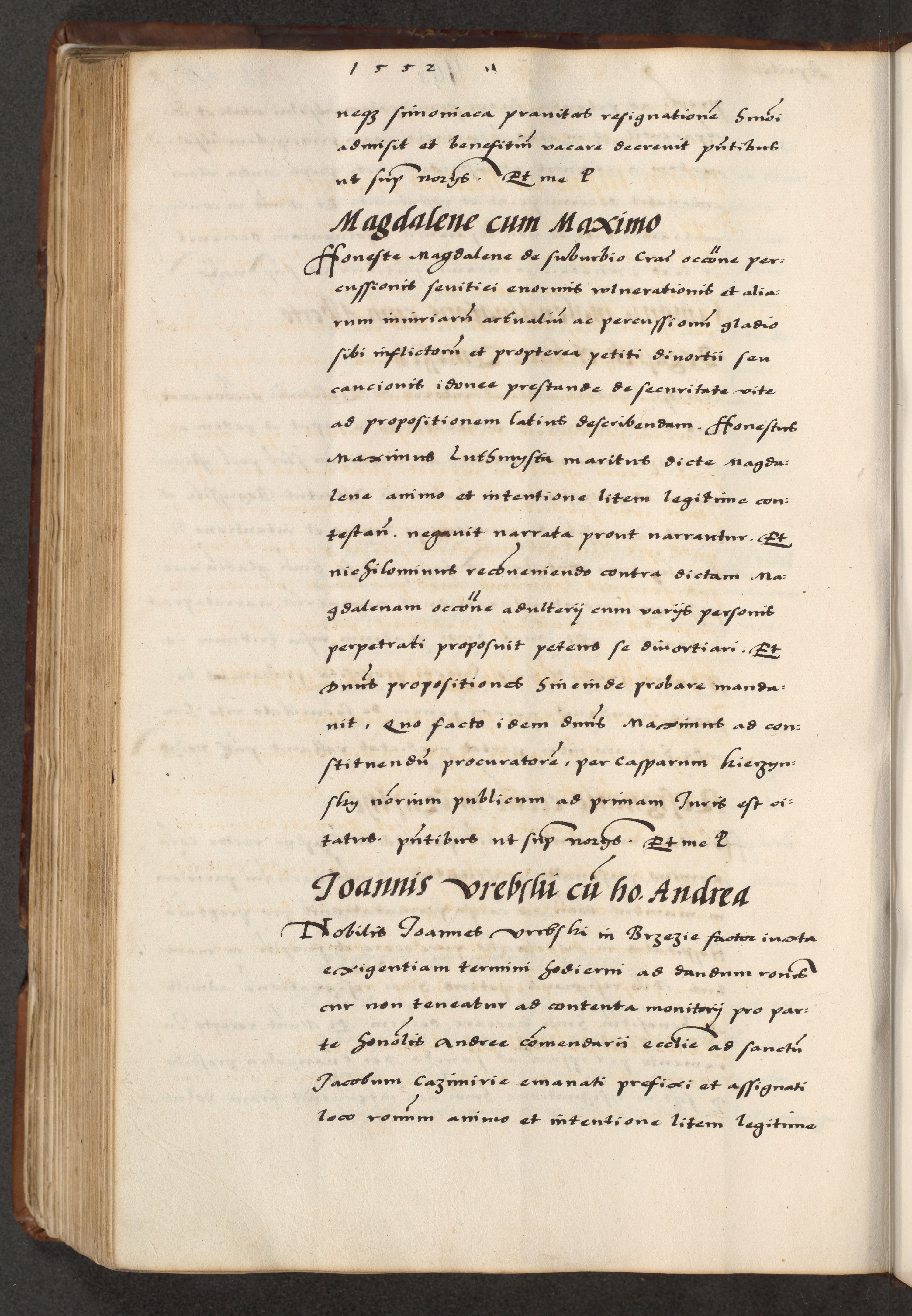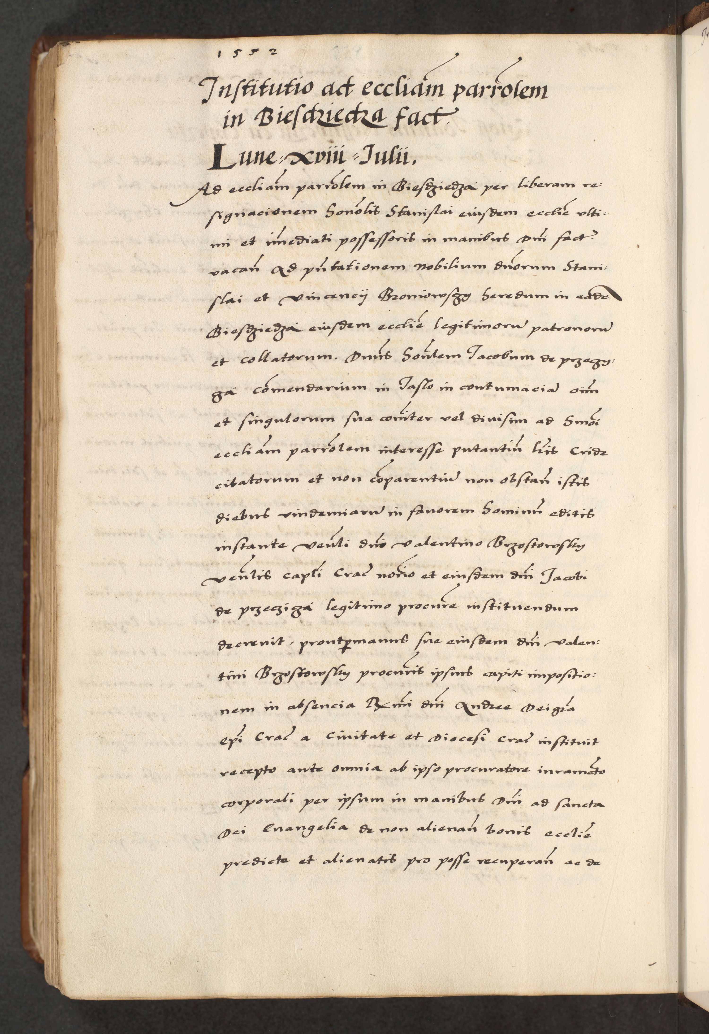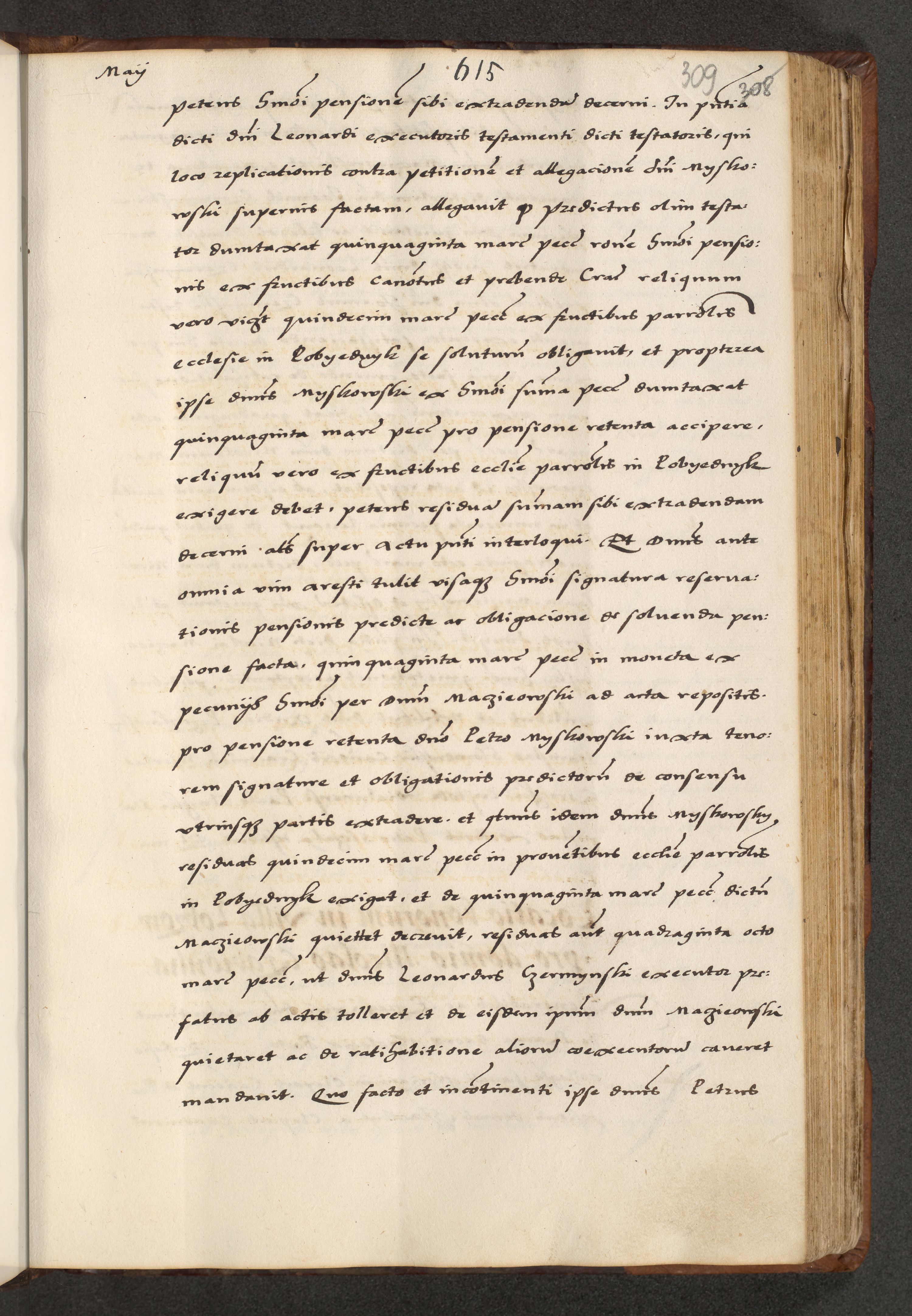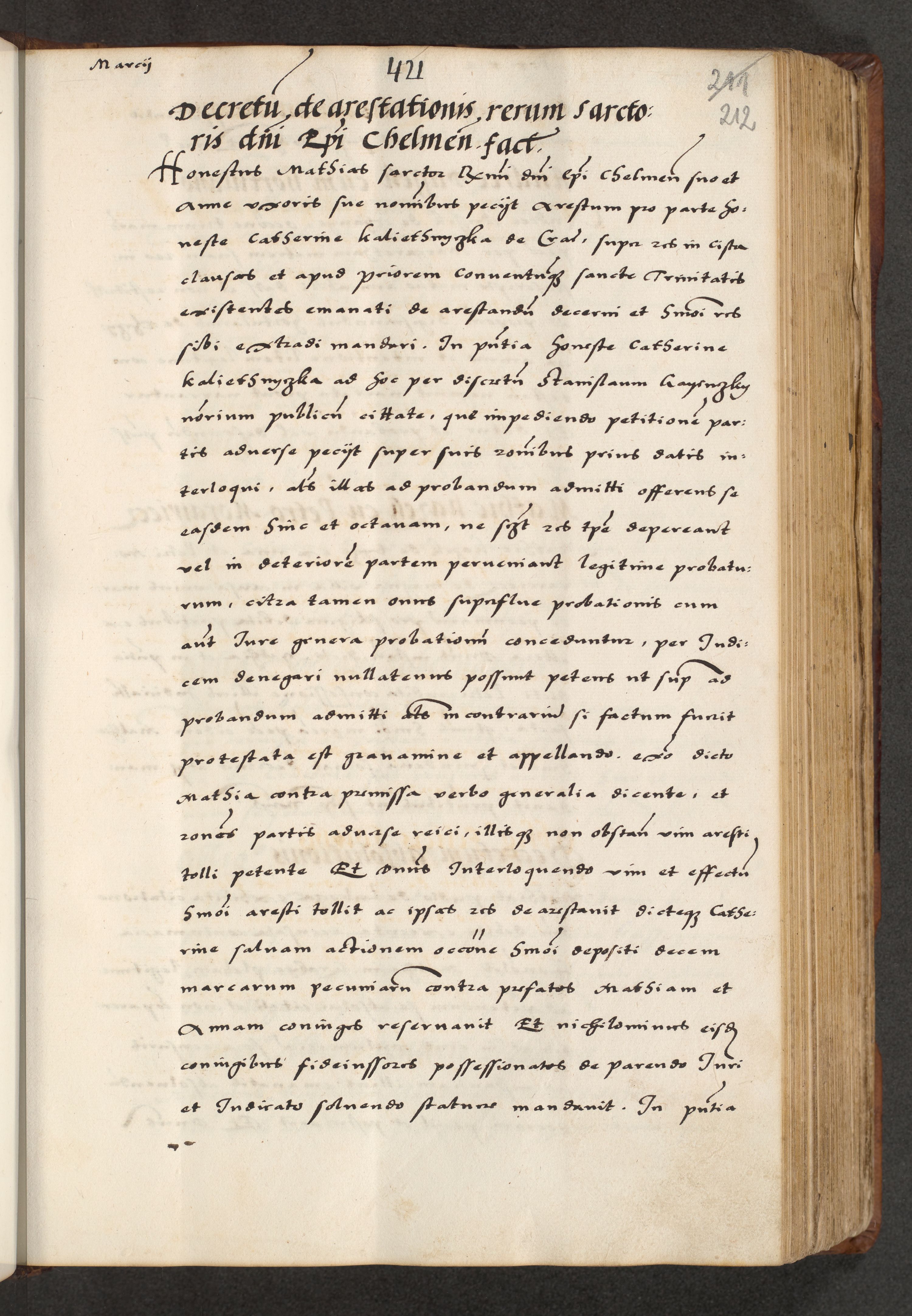 [A]cta actorum causarum, sententiarum tam diffinitivarum quam interloquutoriarum, obligationum, constitutionum et contractuum coram reverendo patre domino Petro Porembski preposito Osvieczimensi, canonico et officiali generali Cracoviensi de anno Domini millesimo quingentesimo quinguagesimo primo, cuius indictio est nona, pontificatus sanctissimi in Christo patris et domini nostri domini Juliii divina providencia pape tercii, anno secundo, a die et mense infrascriptis feliciter continiantur