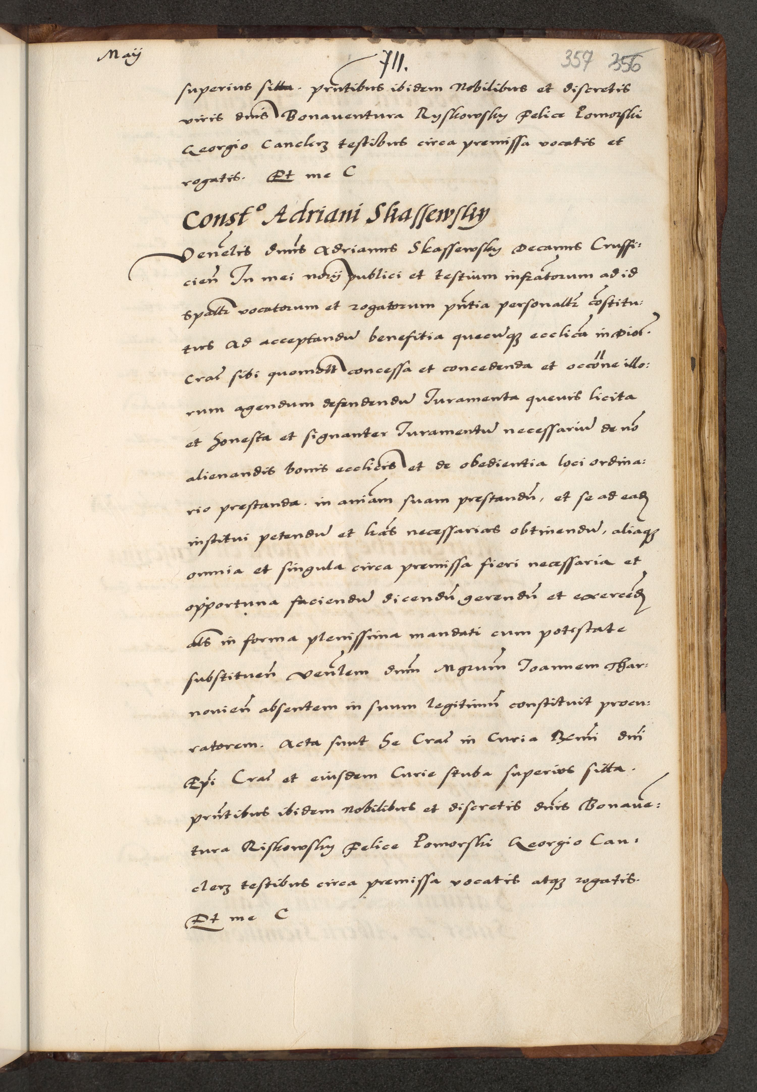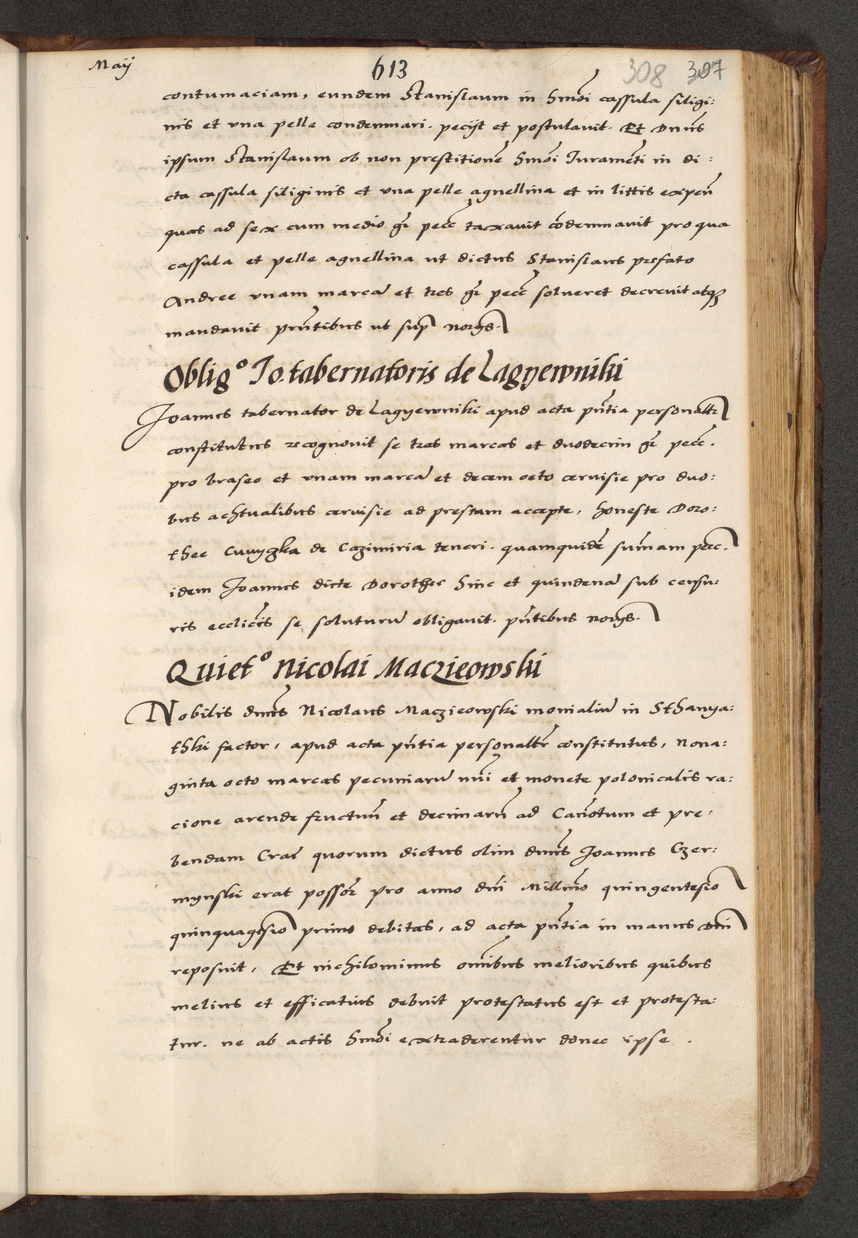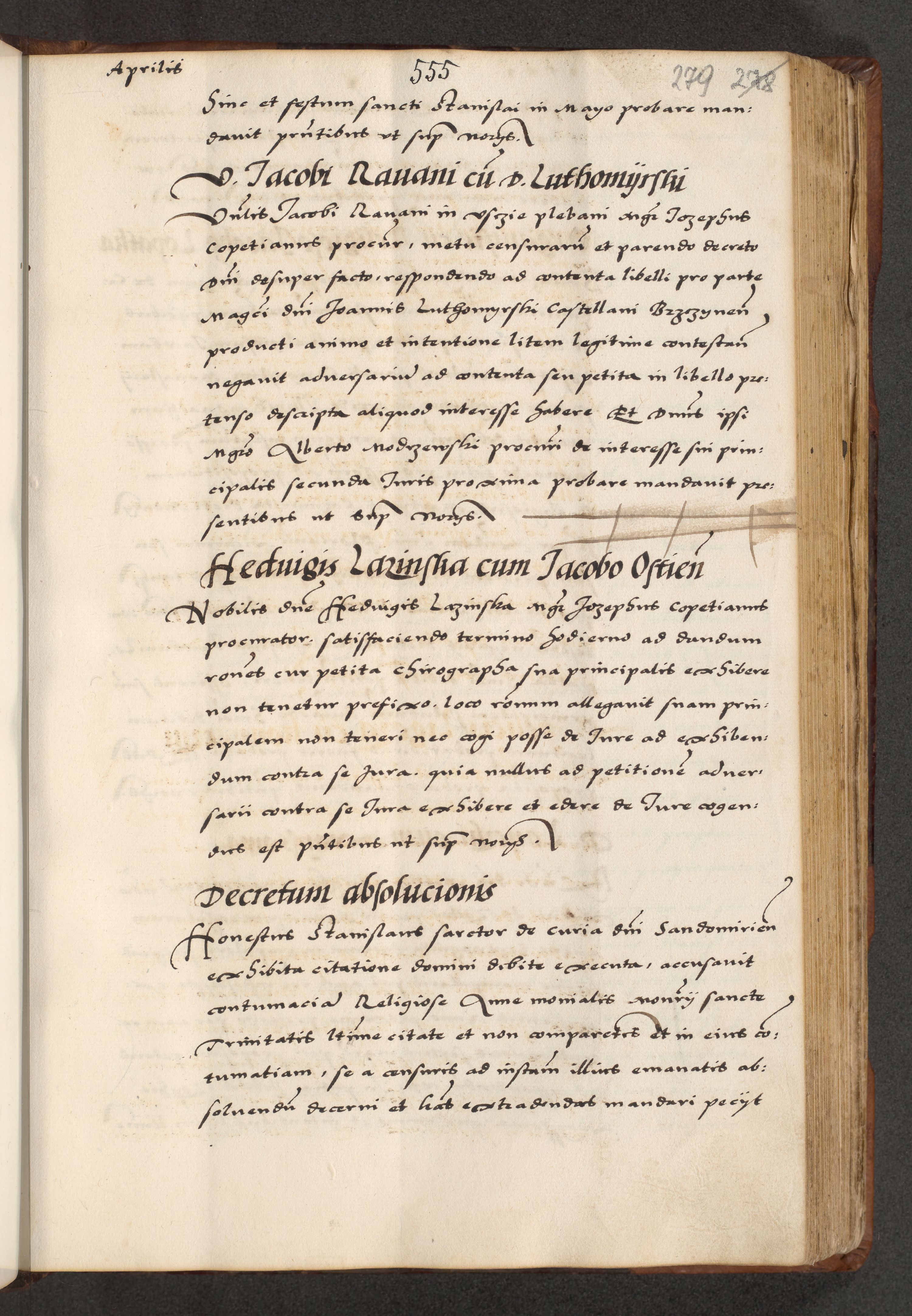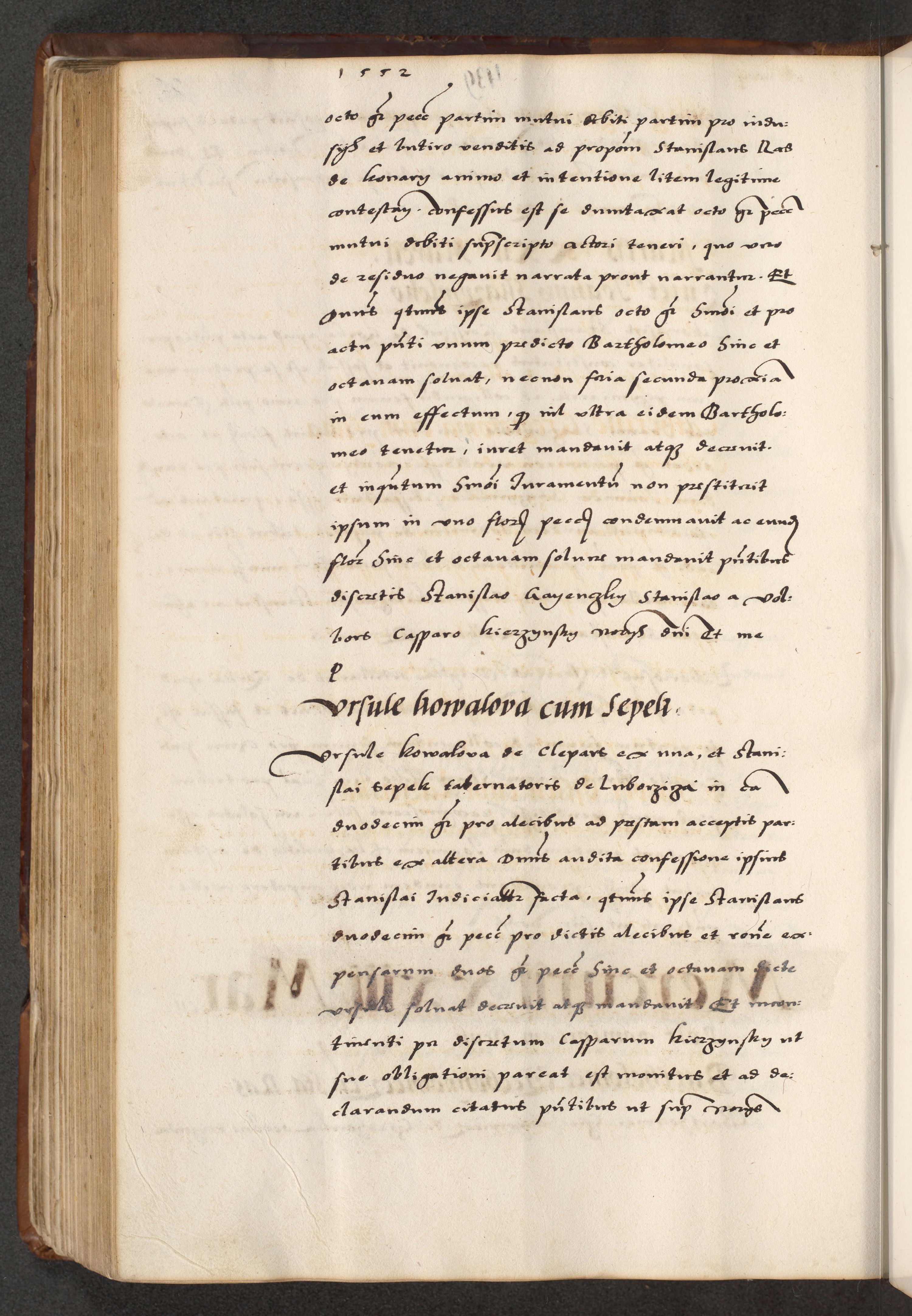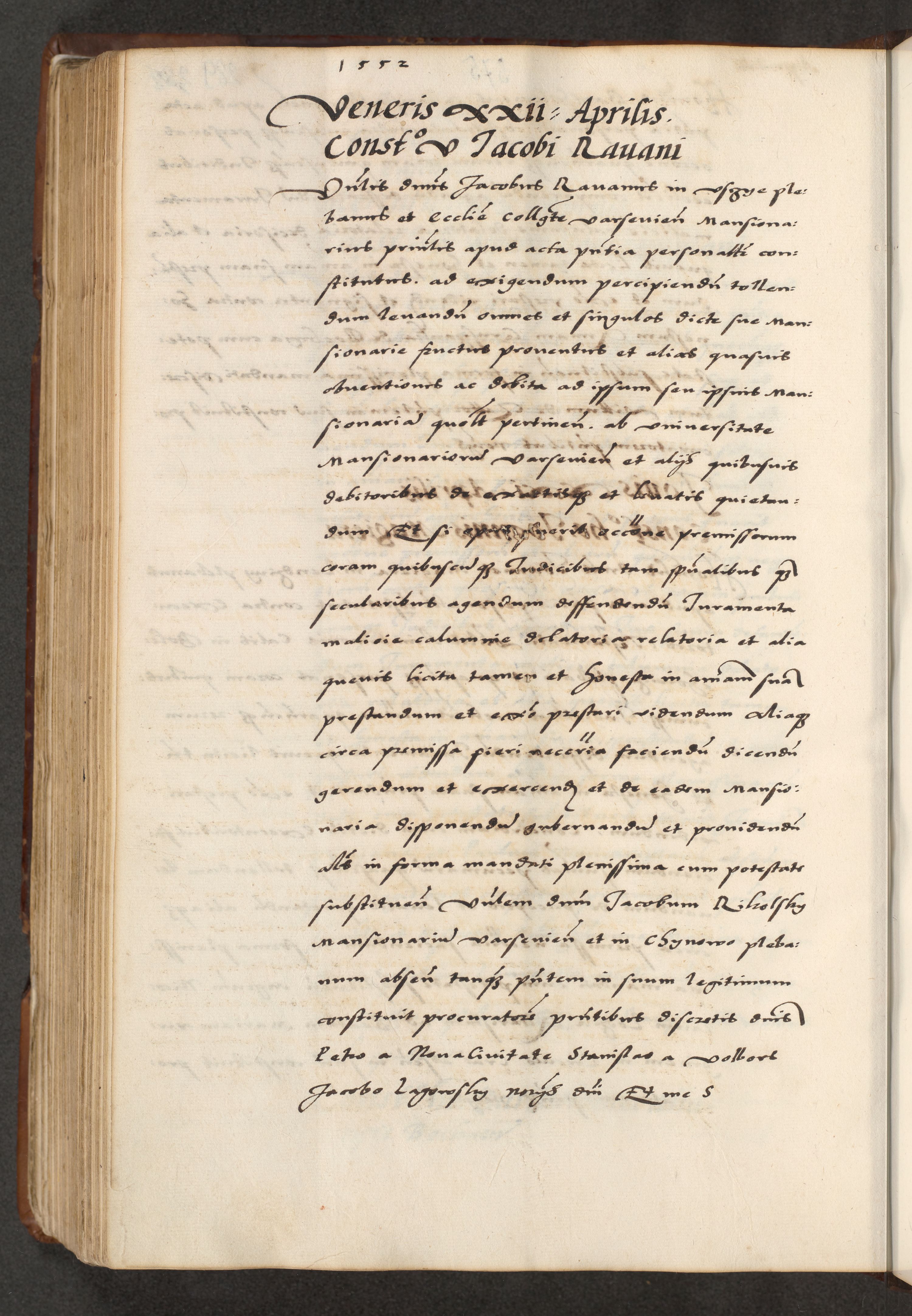 [A]cta actorum causarum, sententiarum tam diffinitivarum quam interloquutoriarum, obligationum, constitutionum et contractuum coram reverendo patre domino Petro Porembski preposito Osvieczimensi, canonico et officiali generali Cracoviensi de anno Domini millesimo quingentesimo quinguagesimo primo, cuius indictio est nona, pontificatus sanctissimi in Christo patris et domini nostri domini Juliii divina providencia pape tercii, anno secundo, a die et mense infrascriptis feliciter continiantur