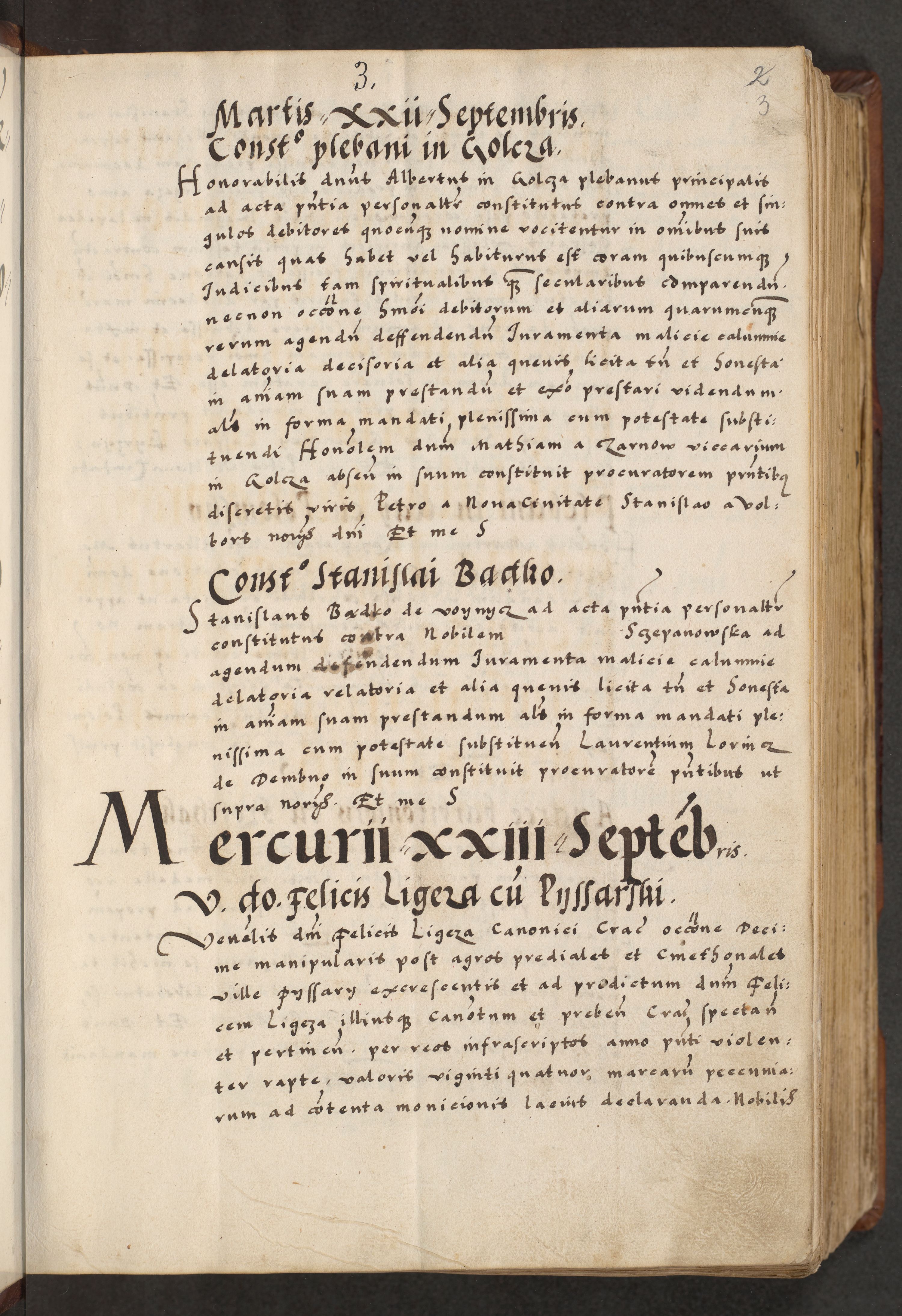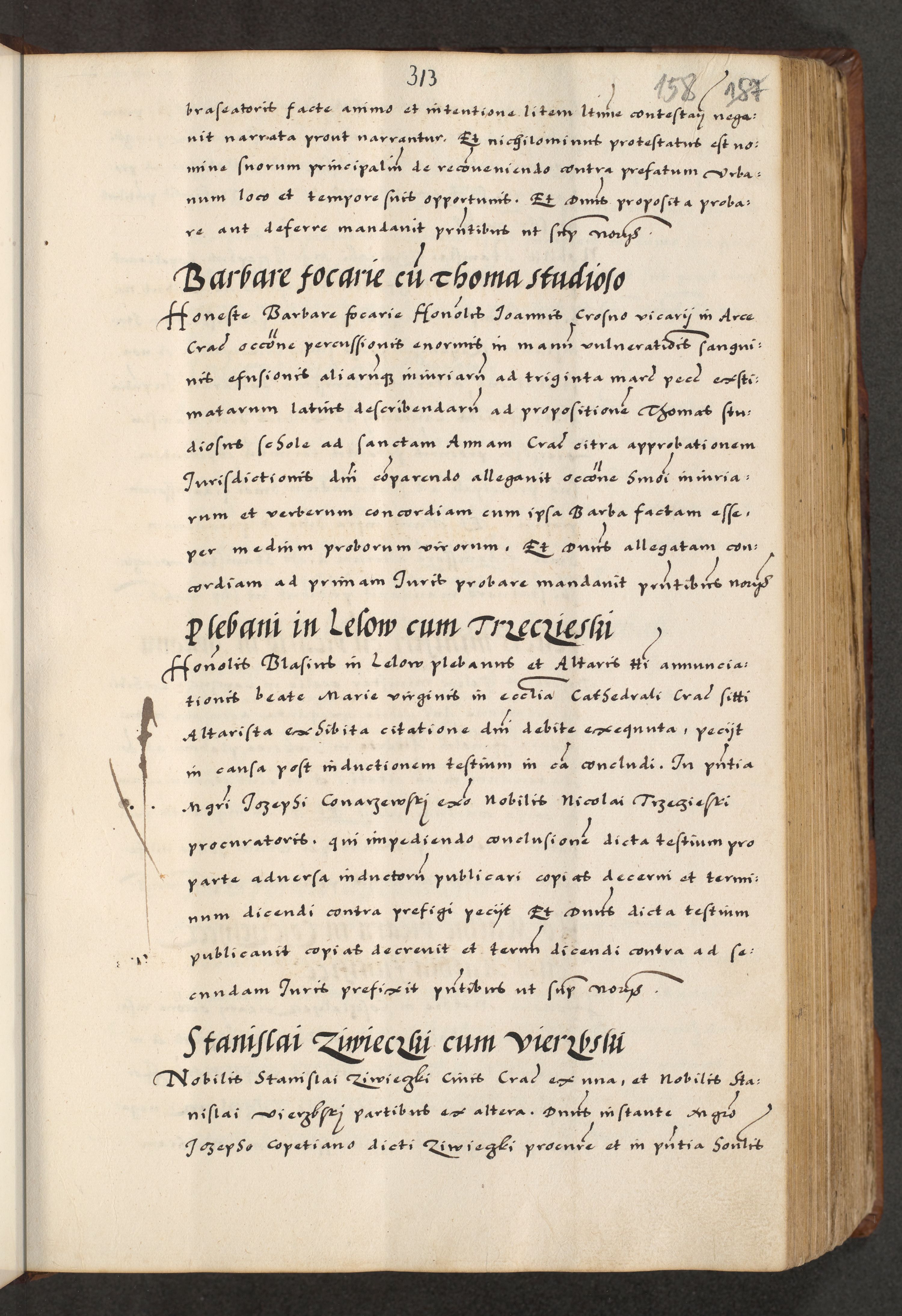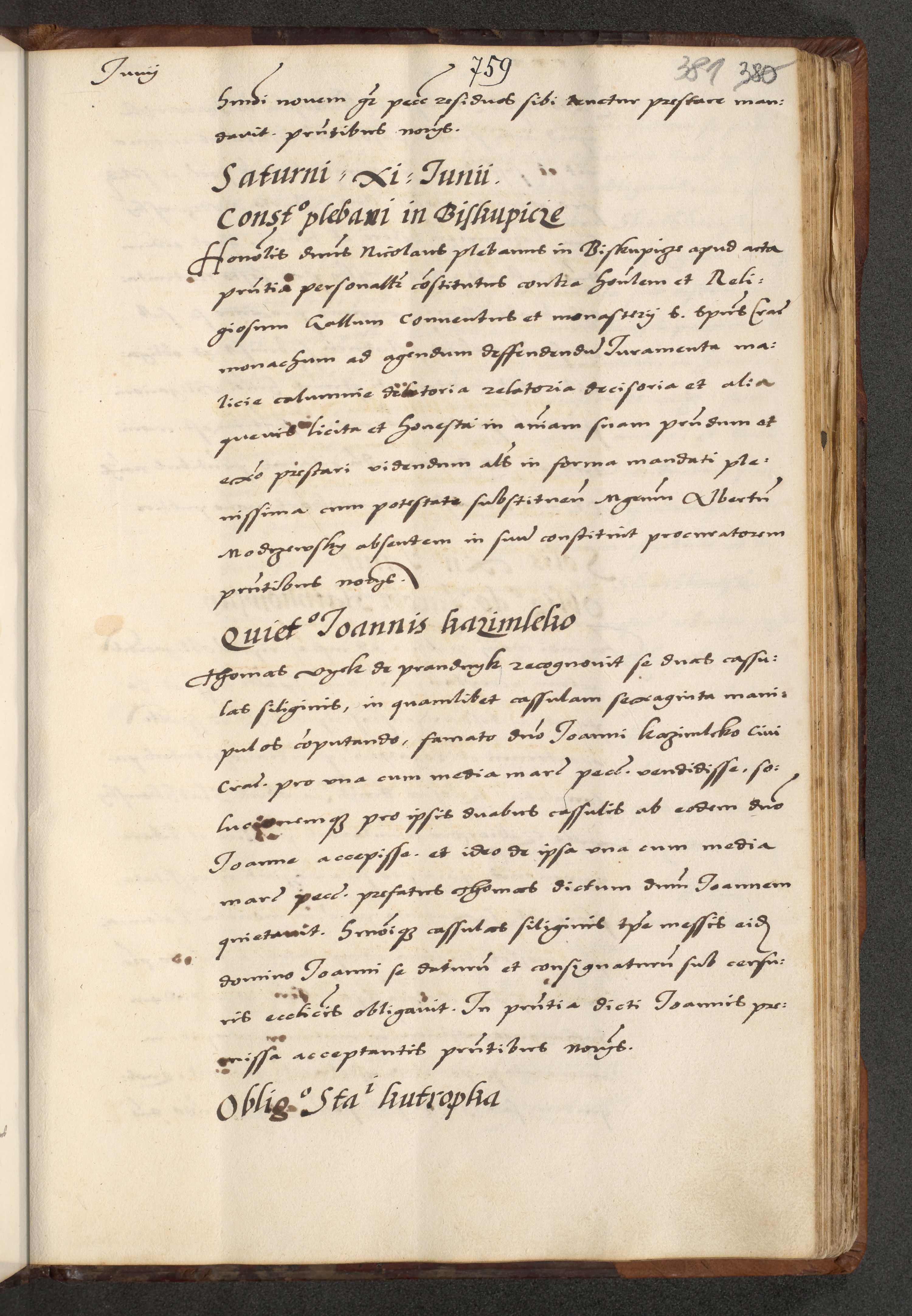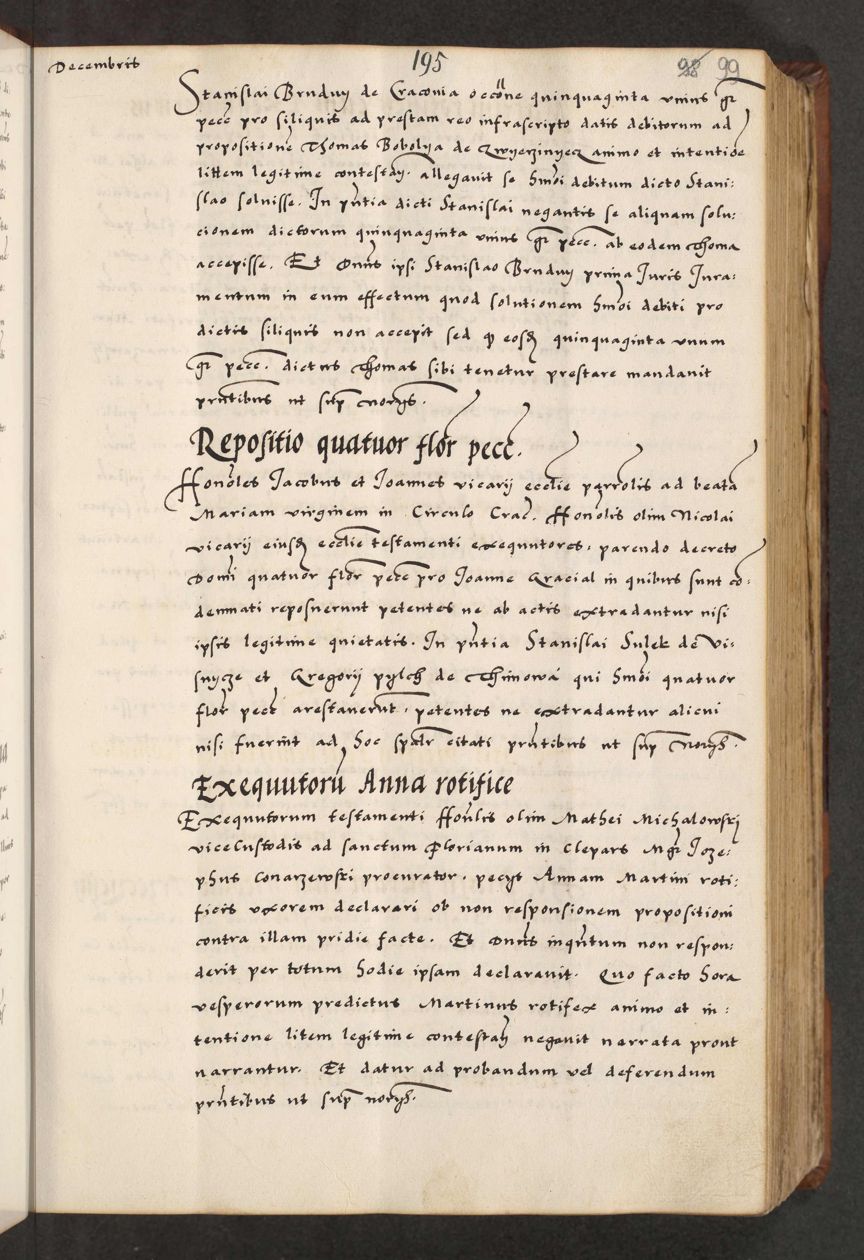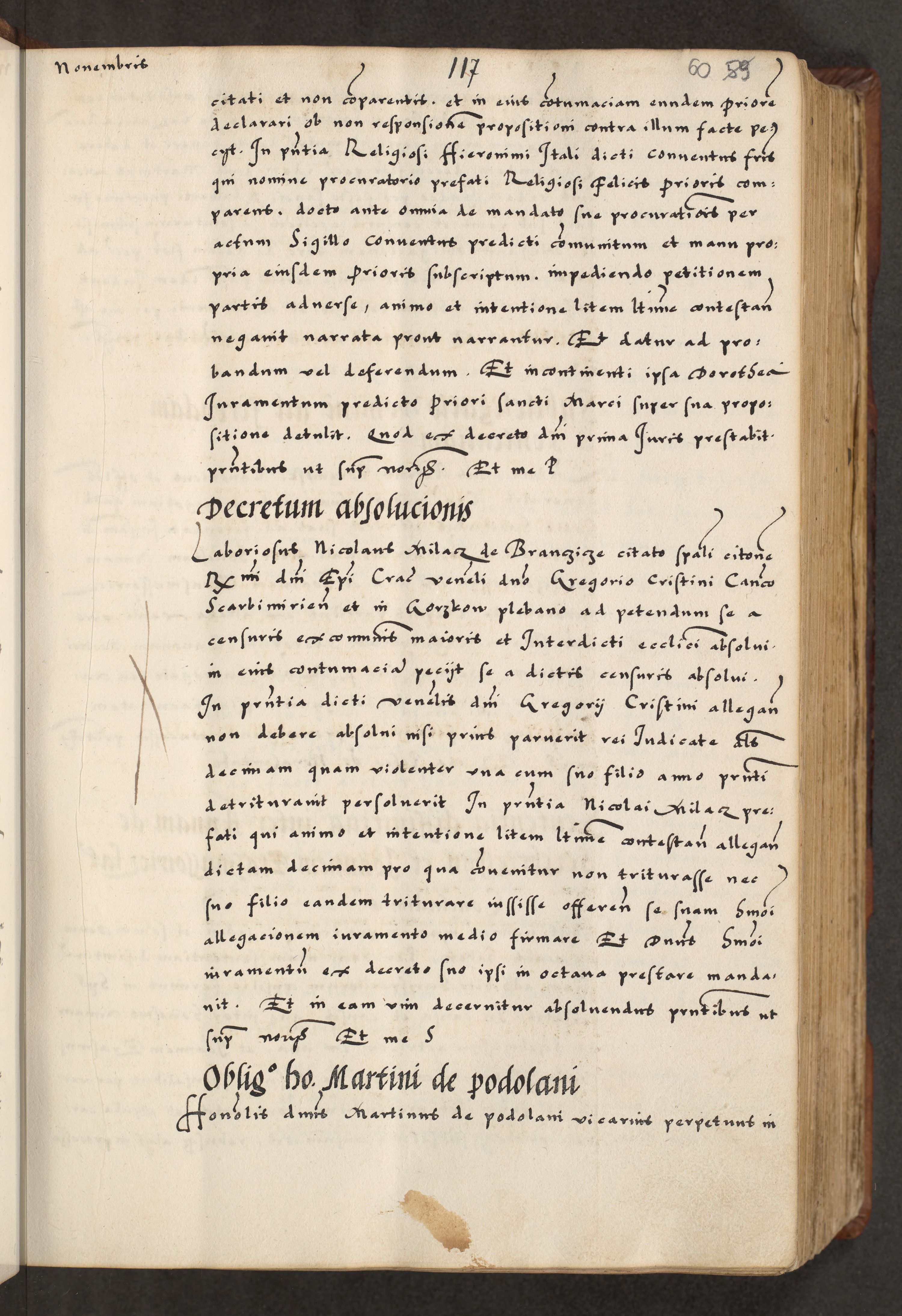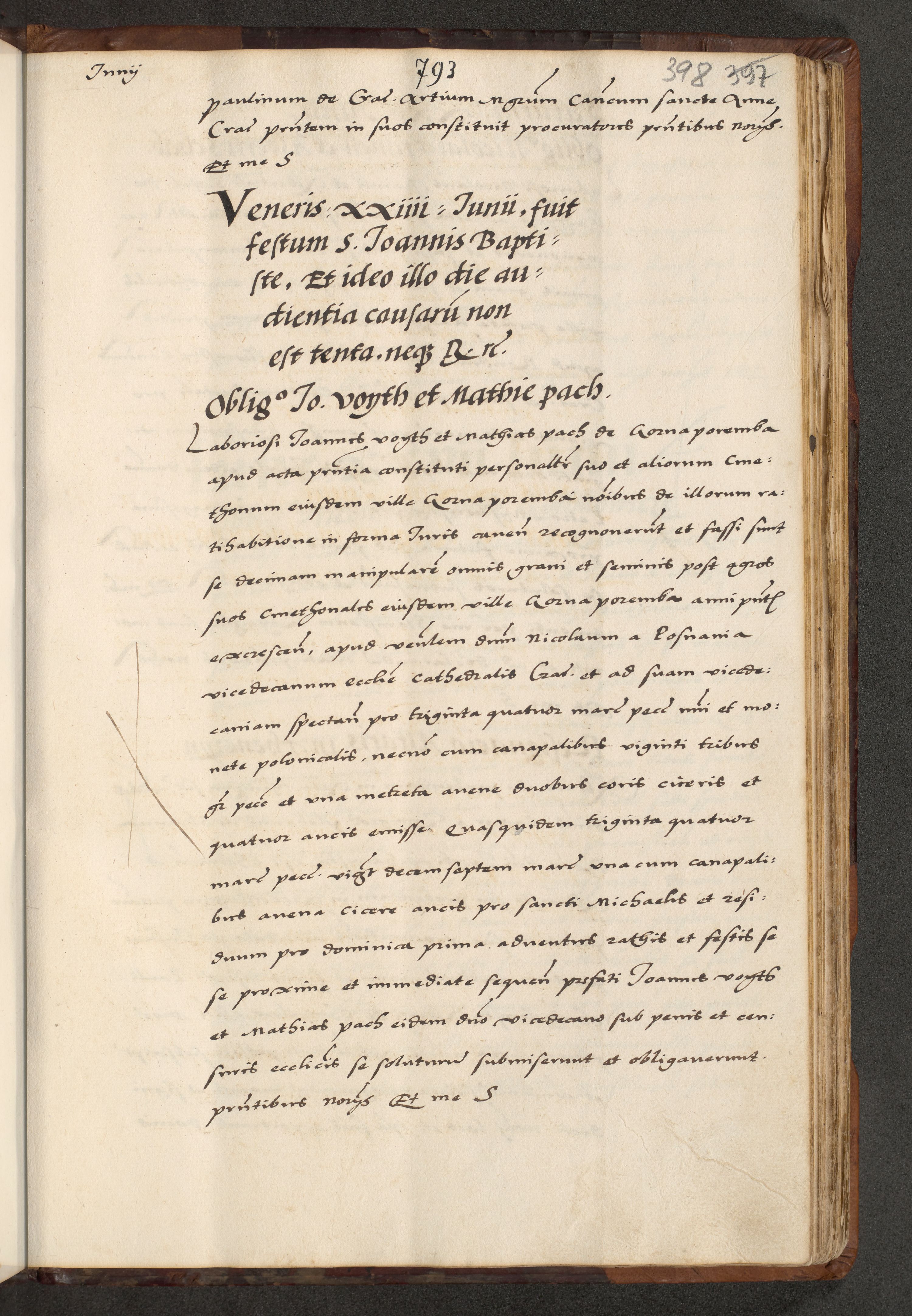 [A]cta actorum causarum, sententiarum tam diffinitivarum quam interloquutoriarum, obligationum, constitutionum et contractuum coram reverendo patre domino Petro Porembski preposito Osvieczimensi, canonico et officiali generali Cracoviensi de anno Domini millesimo quingentesimo quinguagesimo primo, cuius indictio est nona, pontificatus sanctissimi in Christo patris et domini nostri domini Juliii divina providencia pape tercii, anno secundo, a die et mense infrascriptis feliciter continiantur