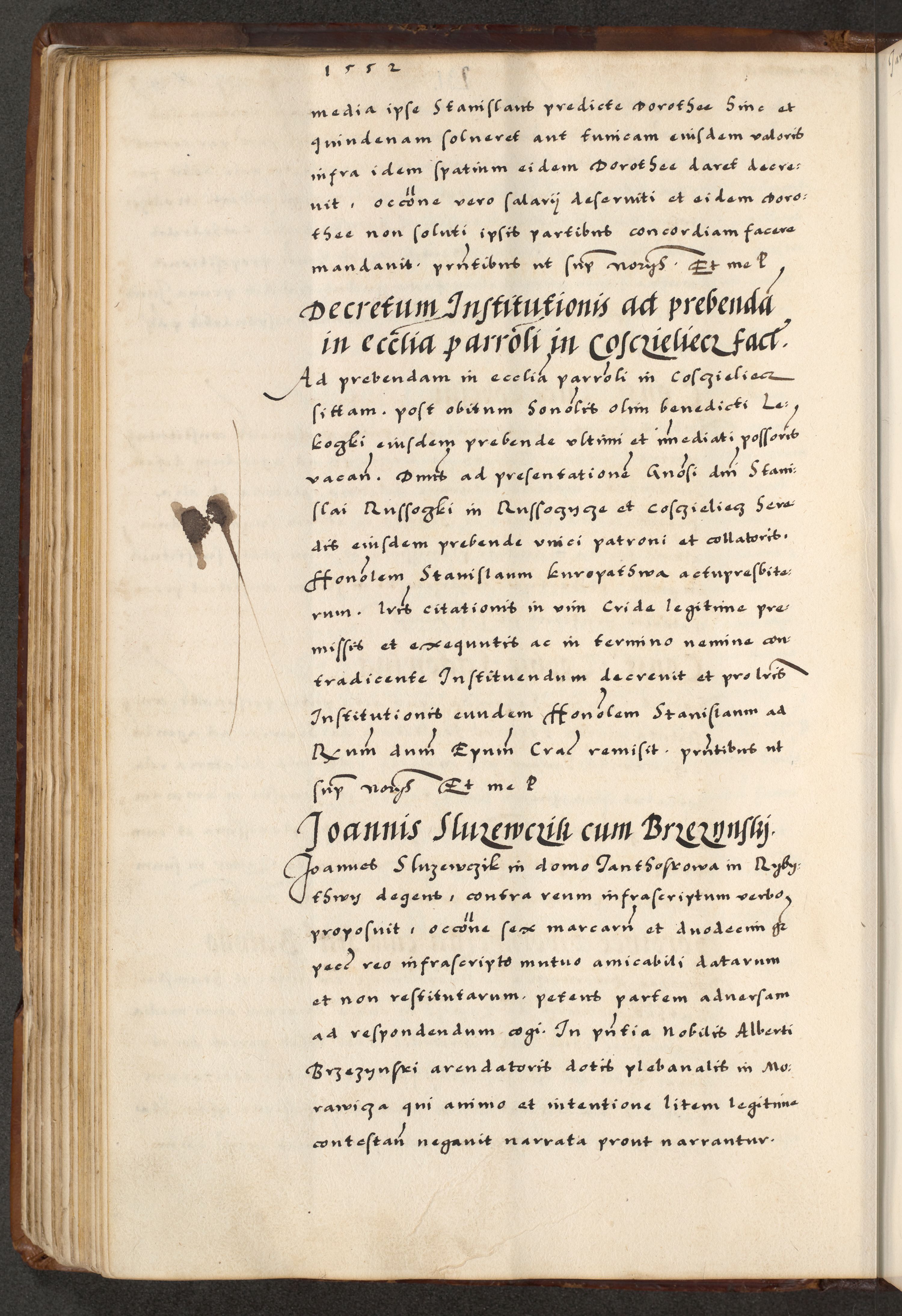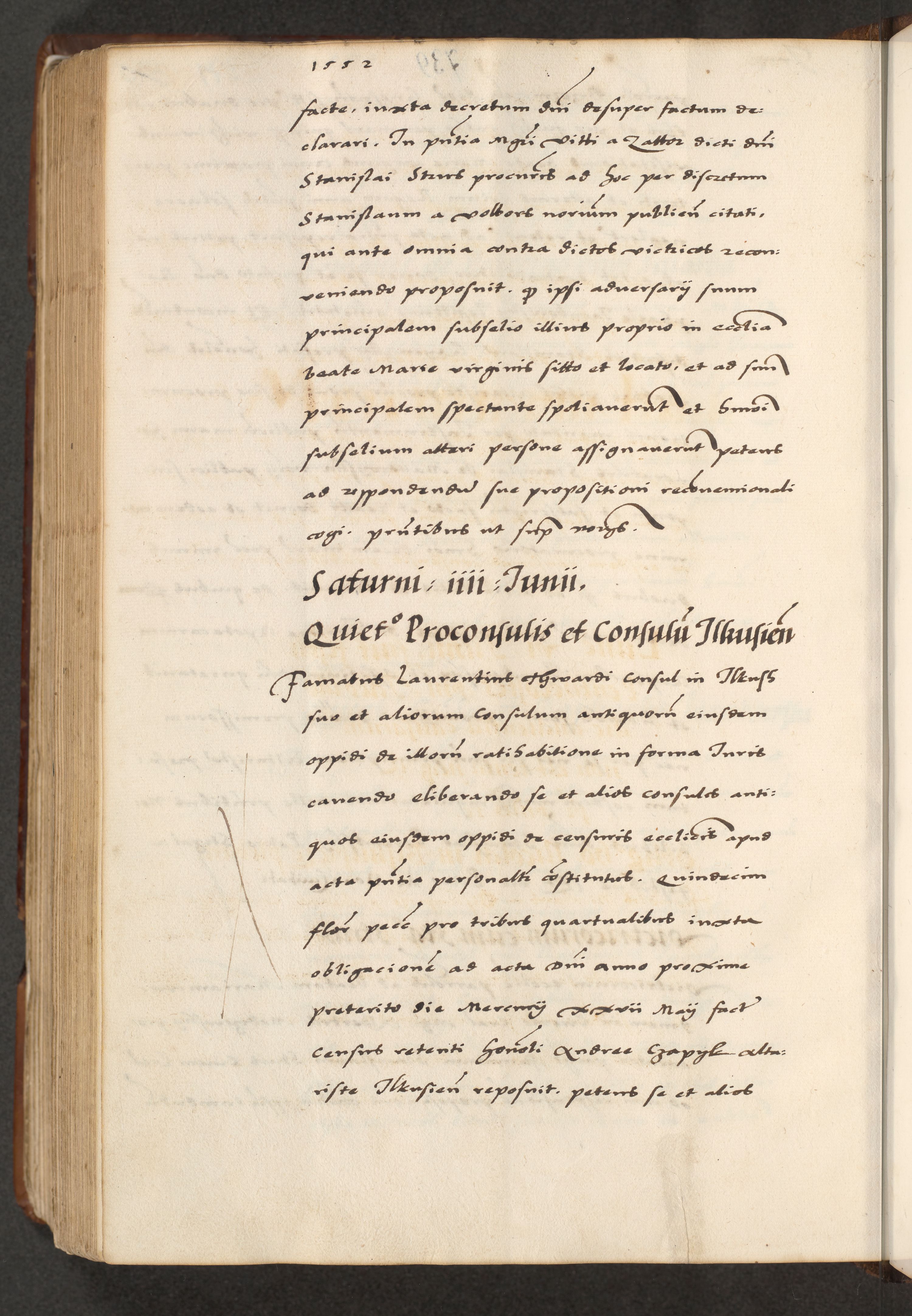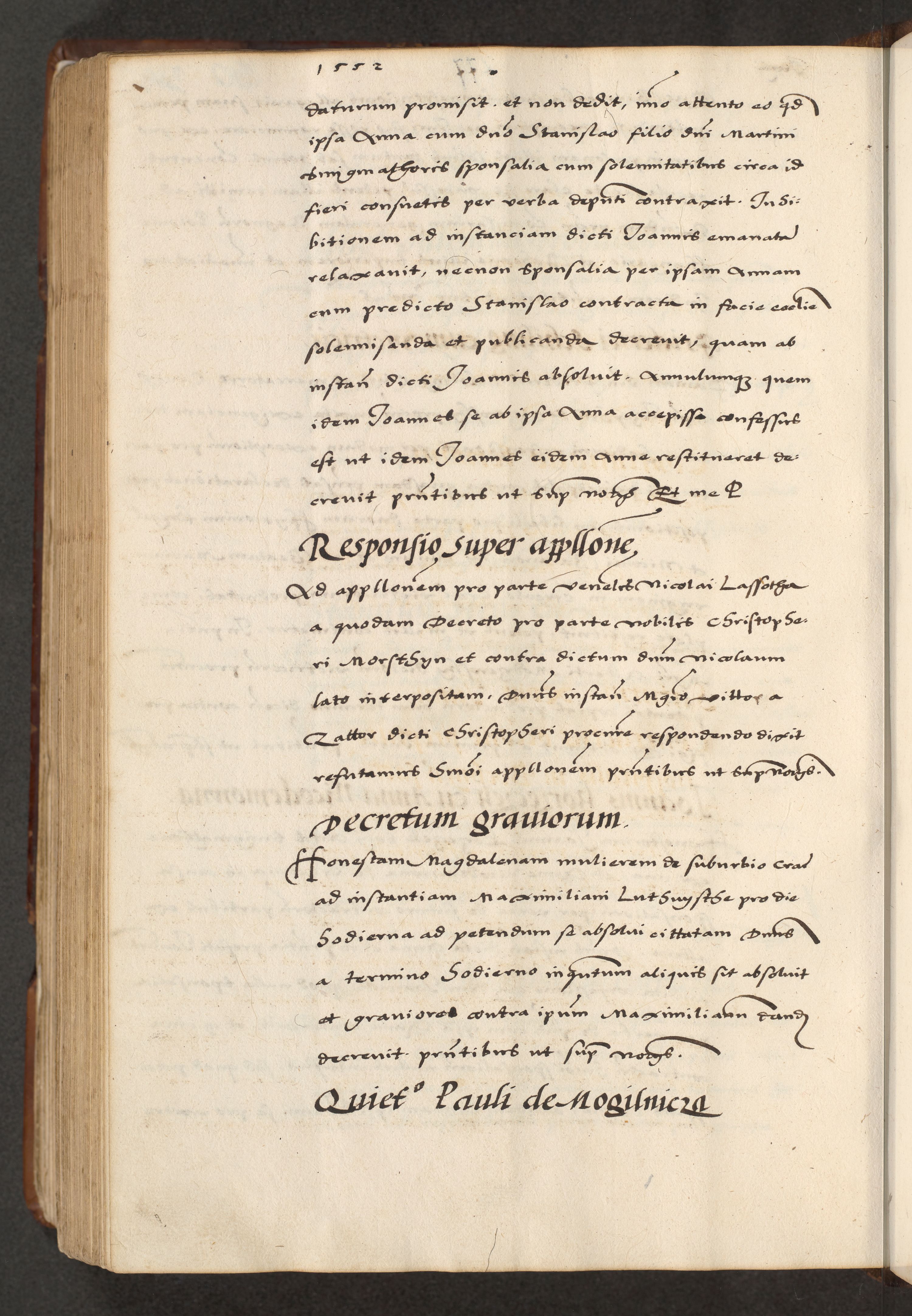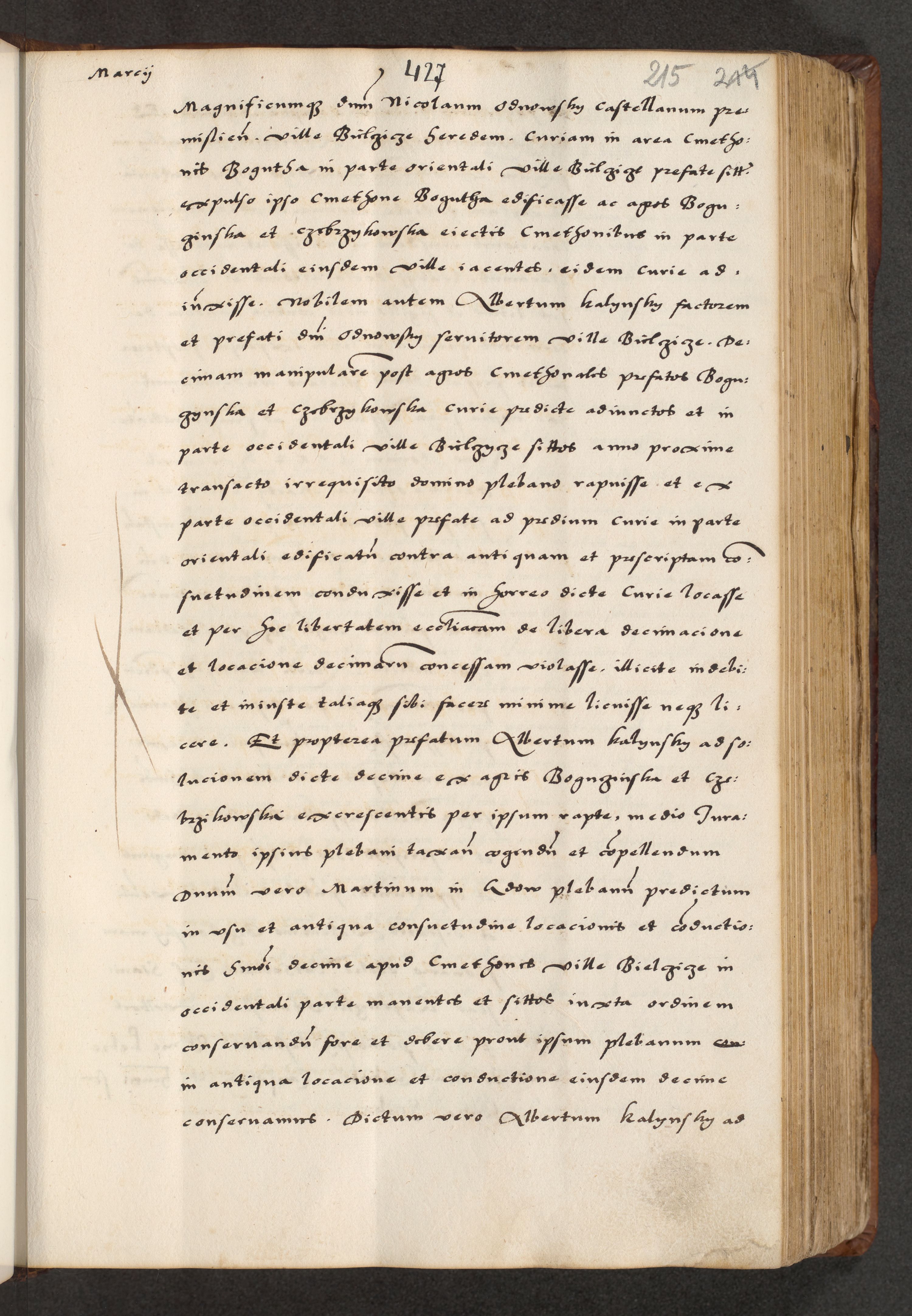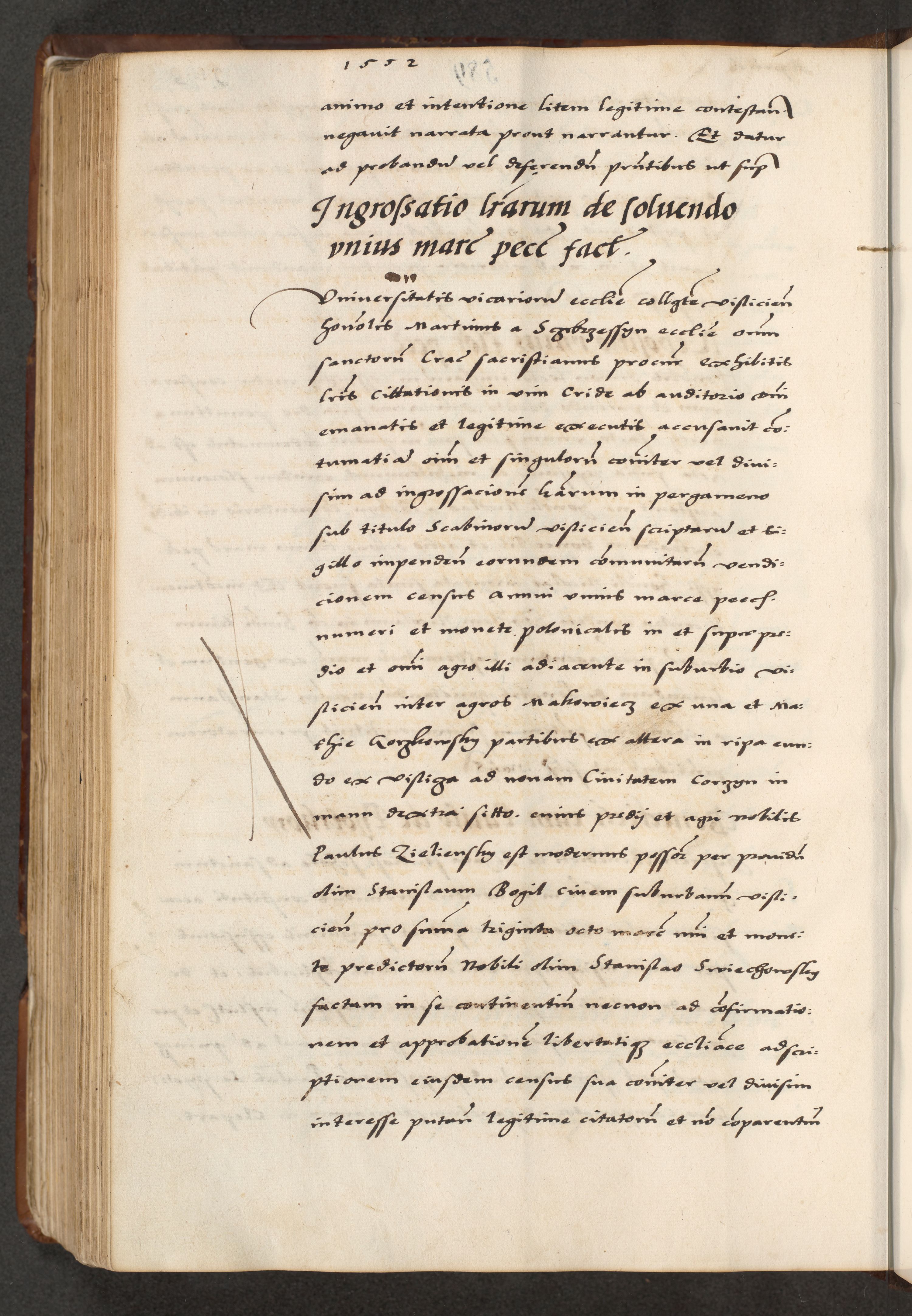 [A]cta actorum causarum, sententiarum tam diffinitivarum quam interloquutoriarum, obligationum, constitutionum et contractuum coram reverendo patre domino Petro Porembski preposito Osvieczimensi, canonico et officiali generali Cracoviensi de anno Domini millesimo quingentesimo quinguagesimo primo, cuius indictio est nona, pontificatus sanctissimi in Christo patris et domini nostri domini Juliii divina providencia pape tercii, anno secundo, a die et mense infrascriptis feliciter continiantur