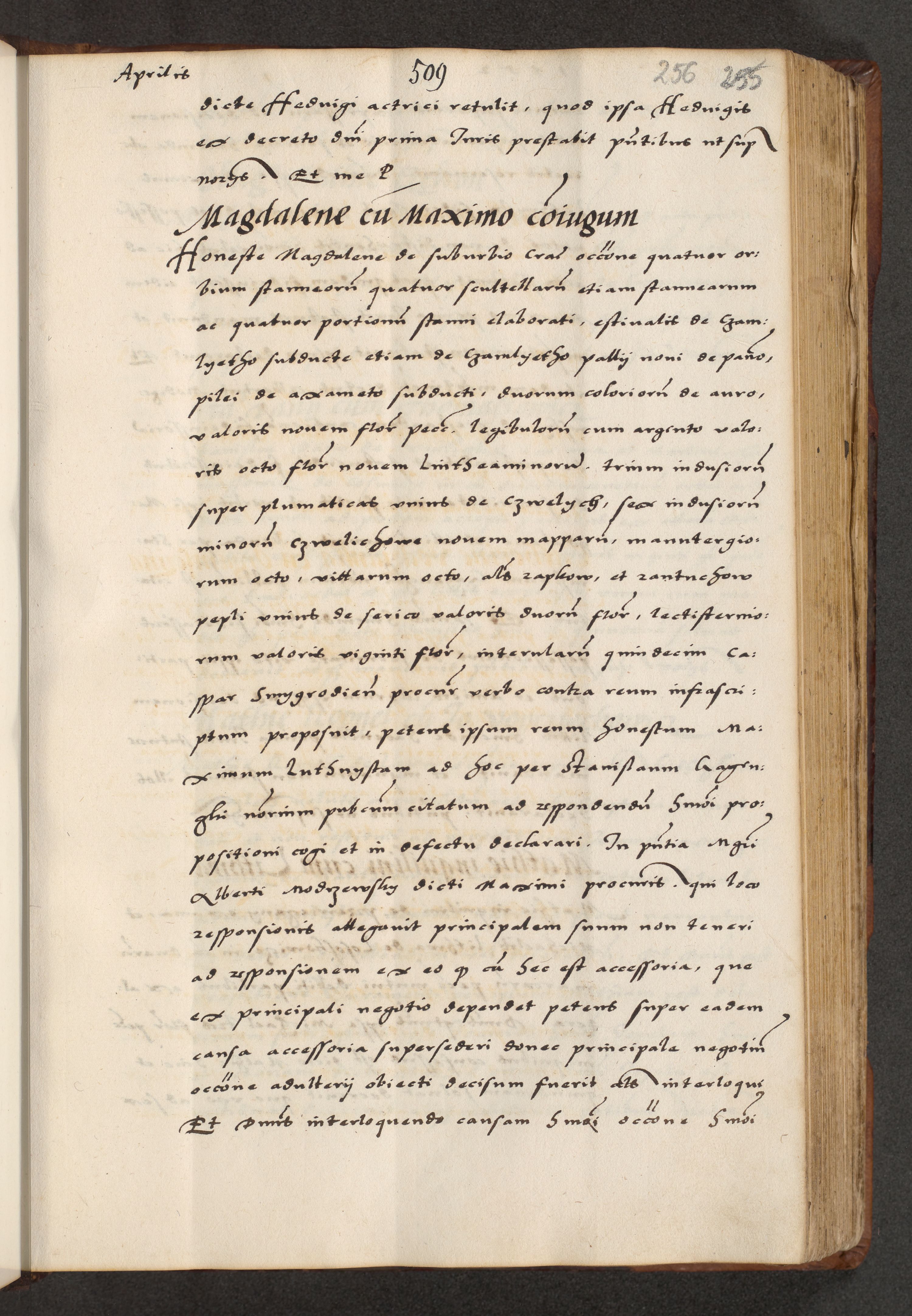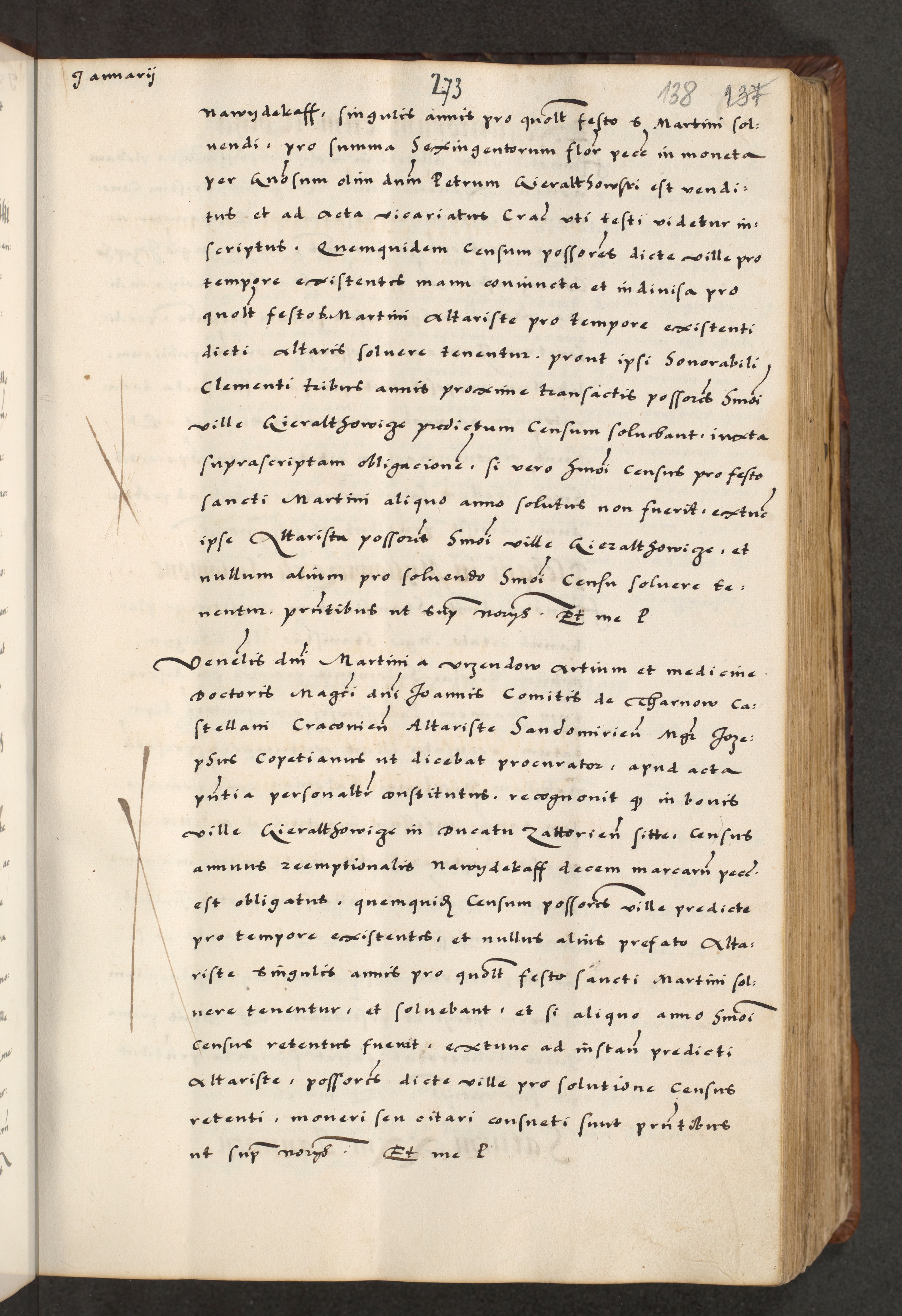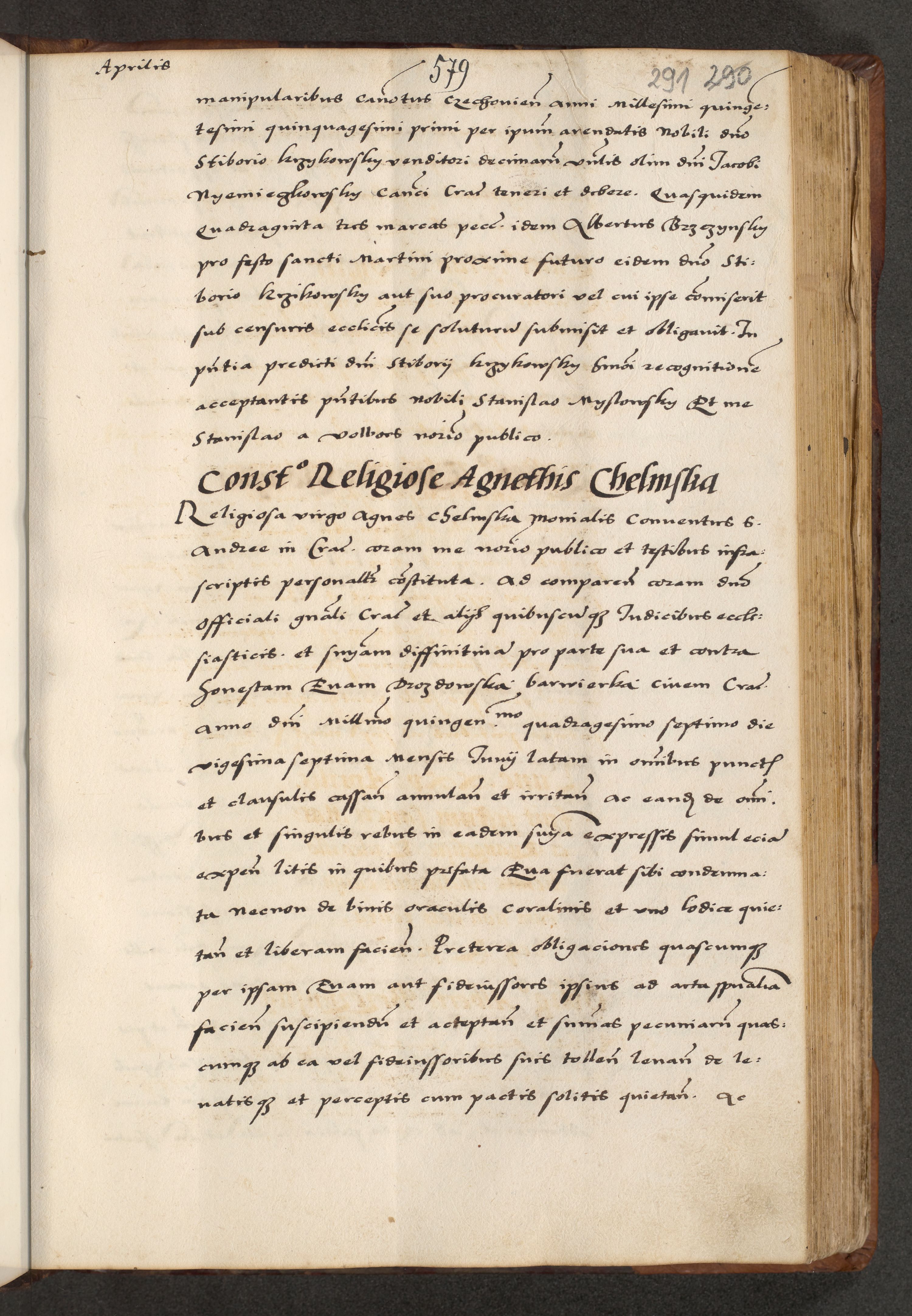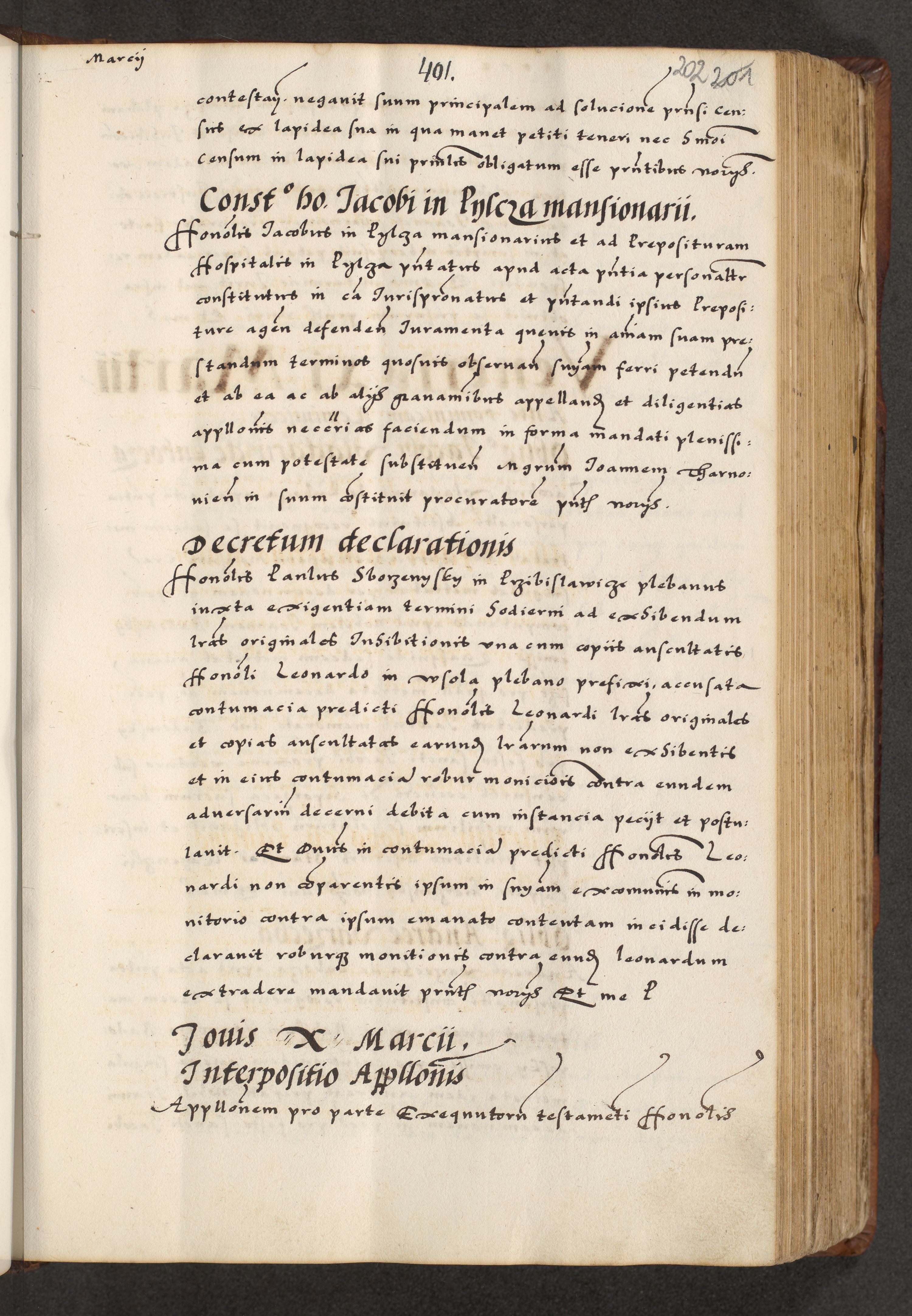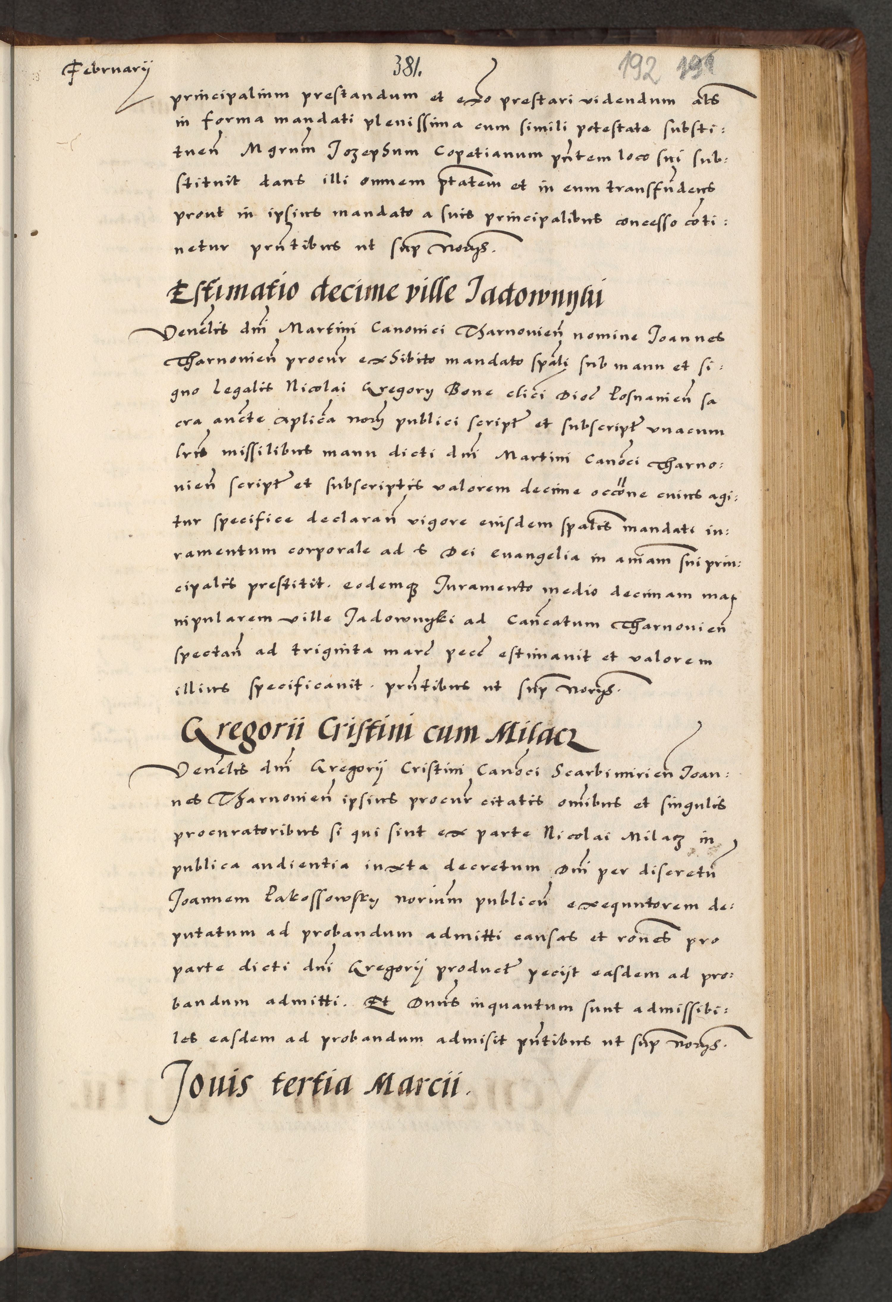 [A]cta actorum causarum, sententiarum tam diffinitivarum quam interloquutoriarum, obligationum, constitutionum et contractuum coram reverendo patre domino Petro Porembski preposito Osvieczimensi, canonico et officiali generali Cracoviensi de anno Domini millesimo quingentesimo quinguagesimo primo, cuius indictio est nona, pontificatus sanctissimi in Christo patris et domini nostri domini Juliii divina providencia pape tercii, anno secundo, a die et mense infrascriptis feliciter continiantur