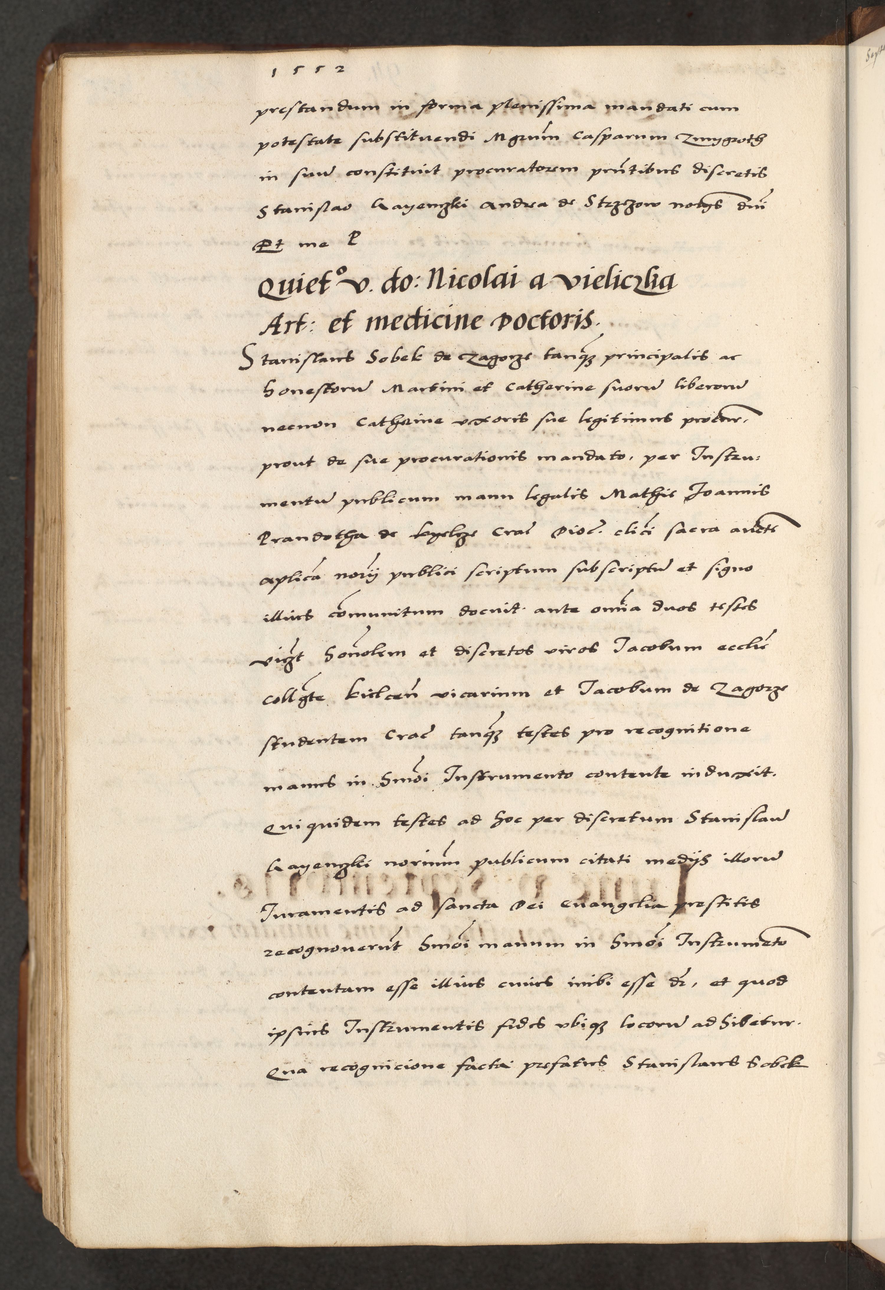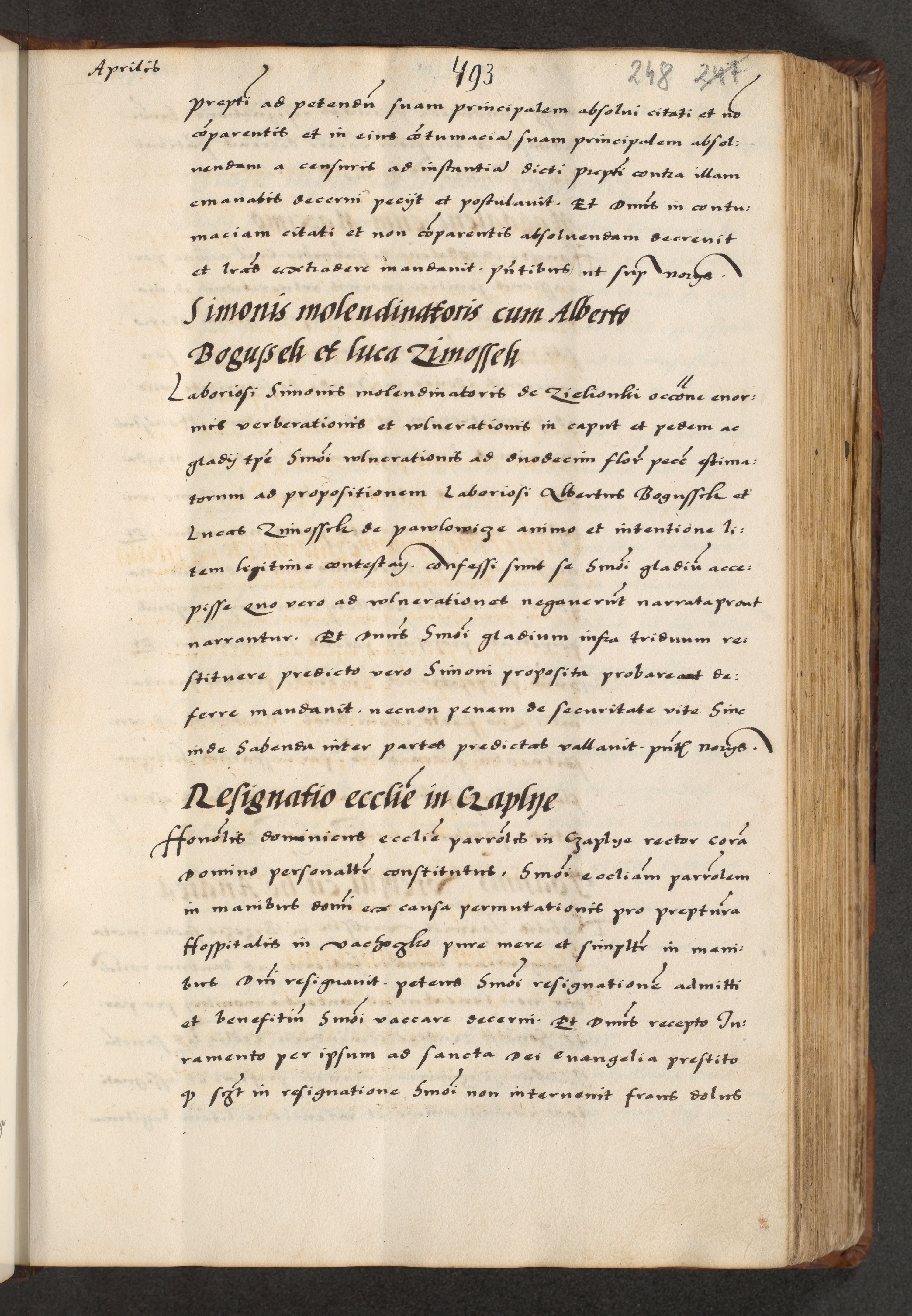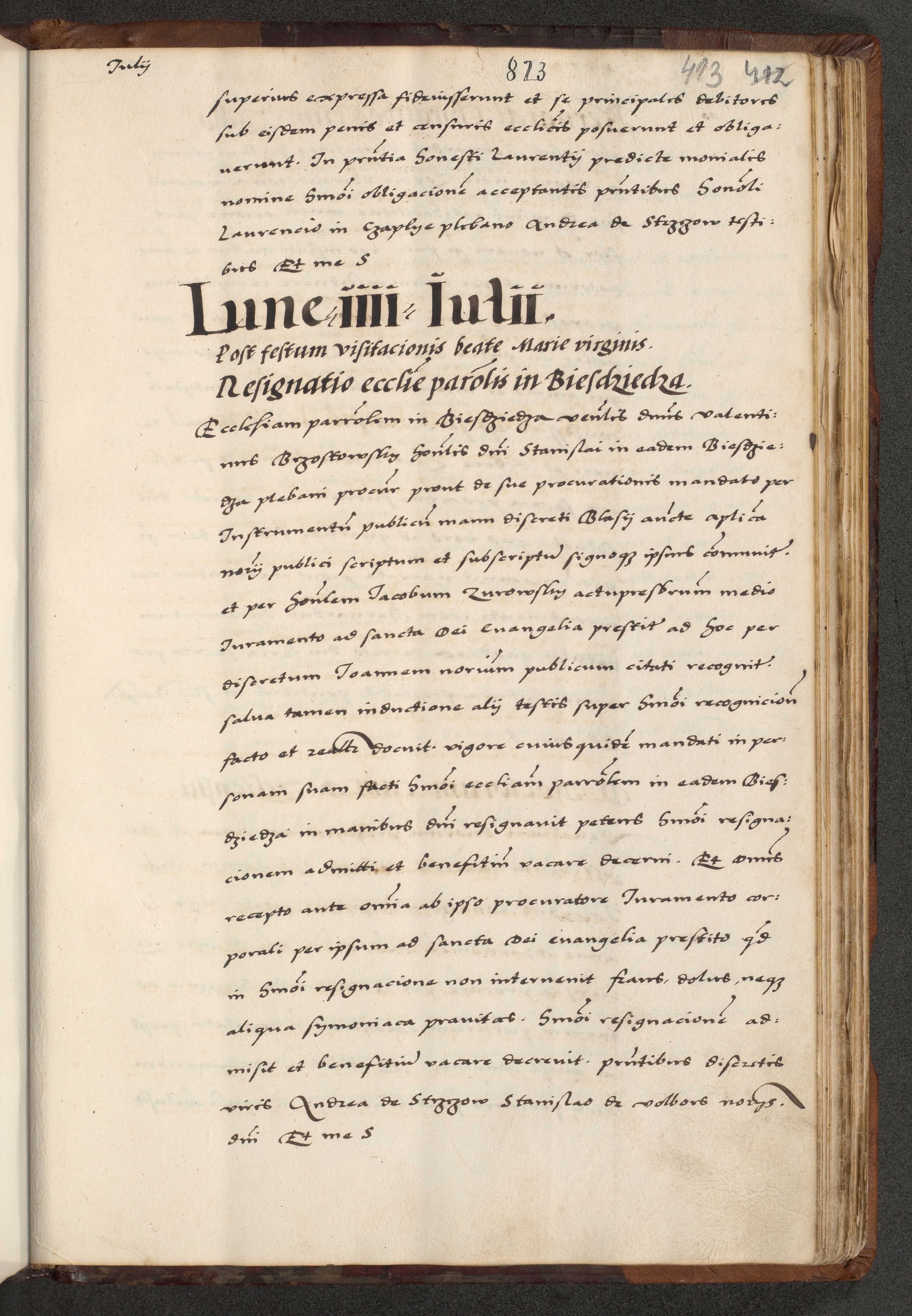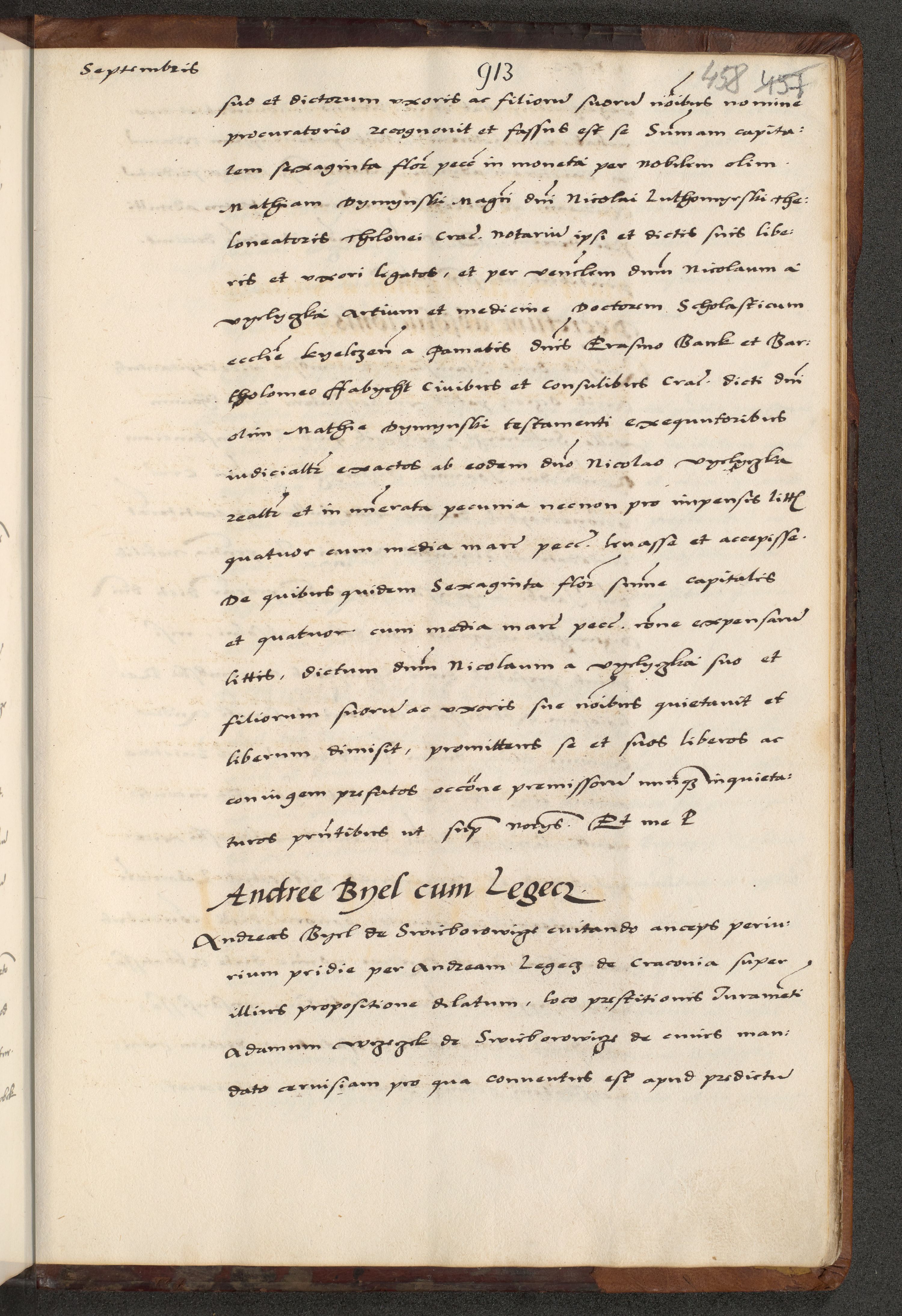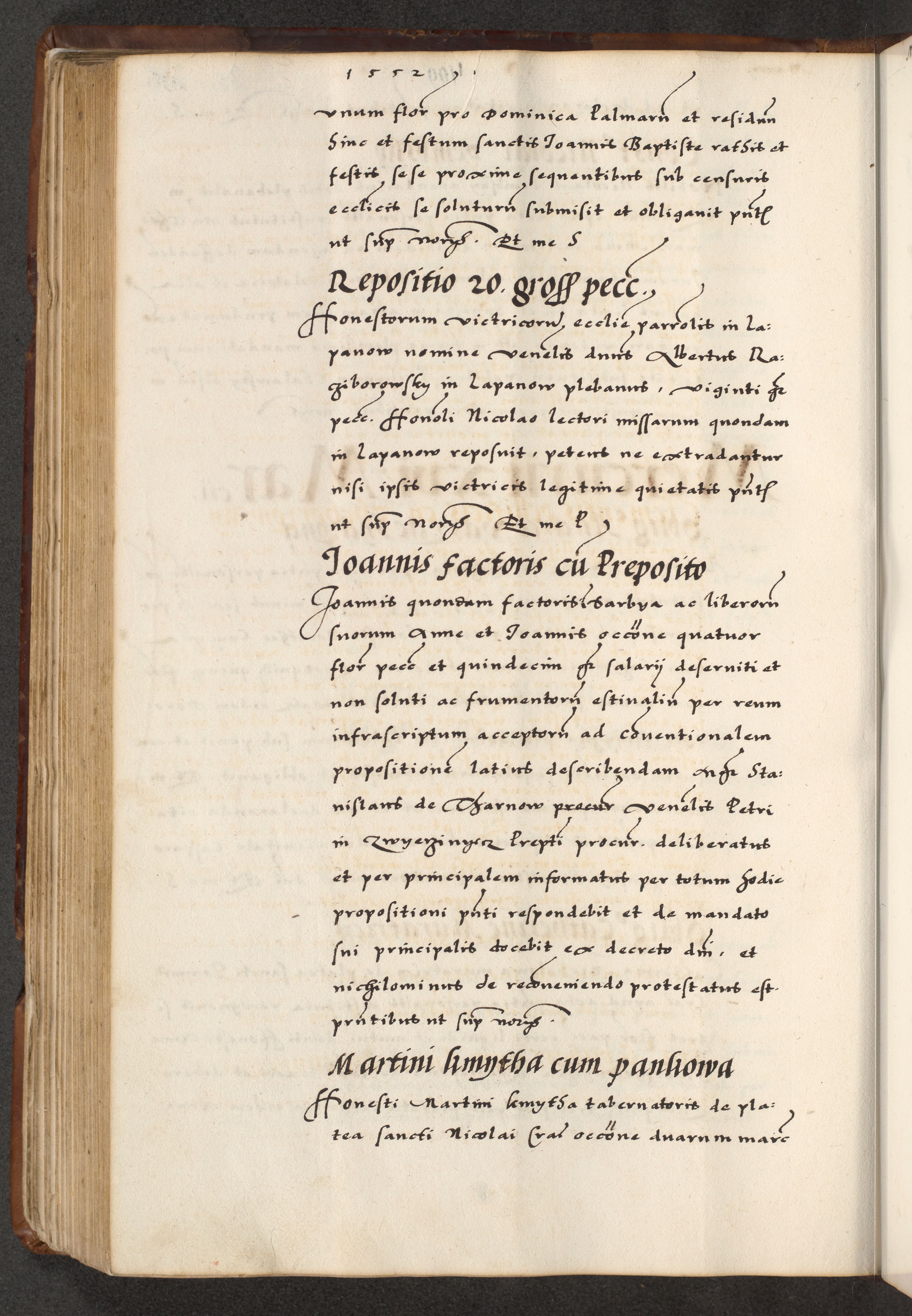 [A]cta actorum causarum, sententiarum tam diffinitivarum quam interloquutoriarum, obligationum, constitutionum et contractuum coram reverendo patre domino Petro Porembski preposito Osvieczimensi, canonico et officiali generali Cracoviensi de anno Domini millesimo quingentesimo quinguagesimo primo, cuius indictio est nona, pontificatus sanctissimi in Christo patris et domini nostri domini Juliii divina providencia pape tercii, anno secundo, a die et mense infrascriptis feliciter continiantur
