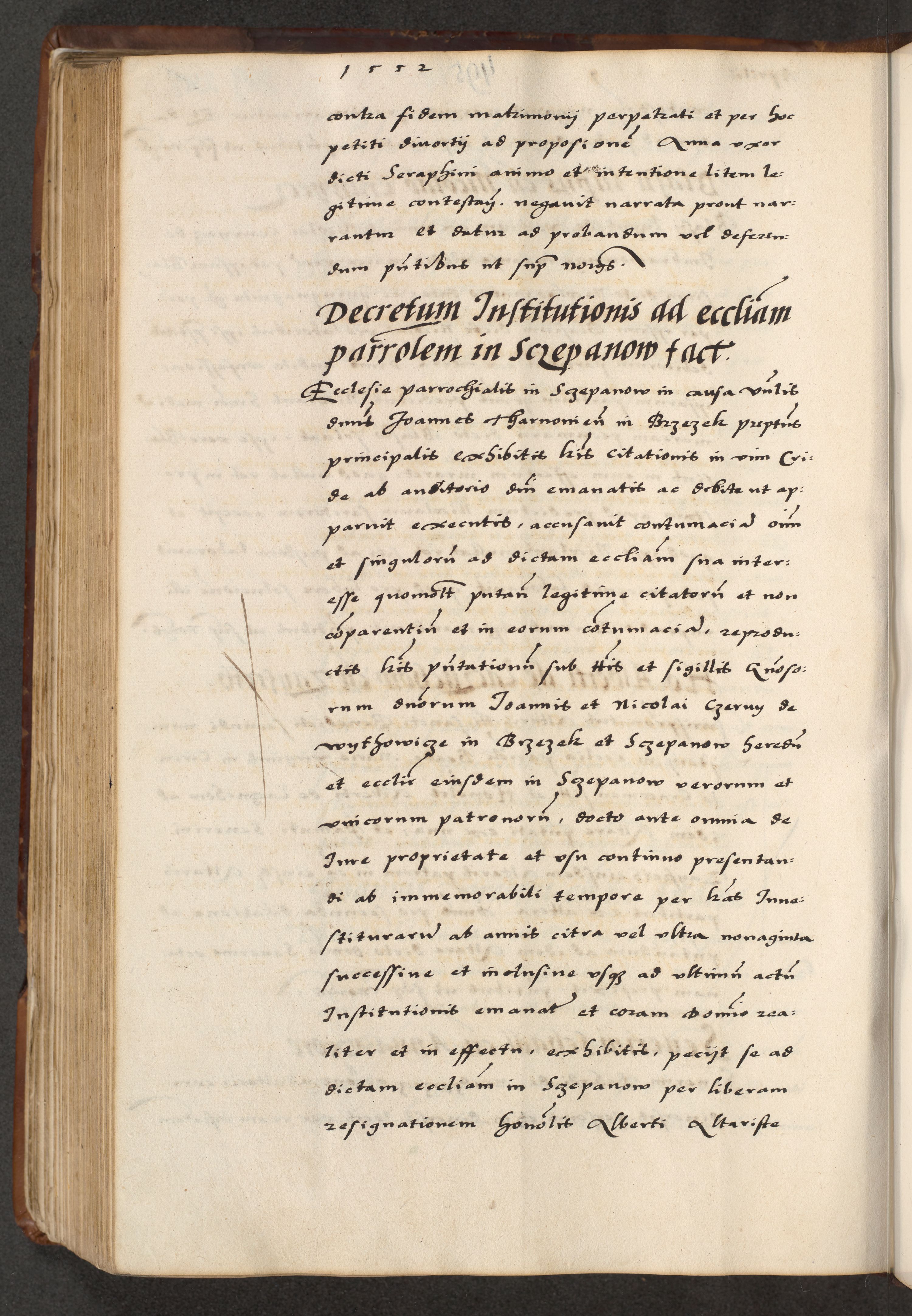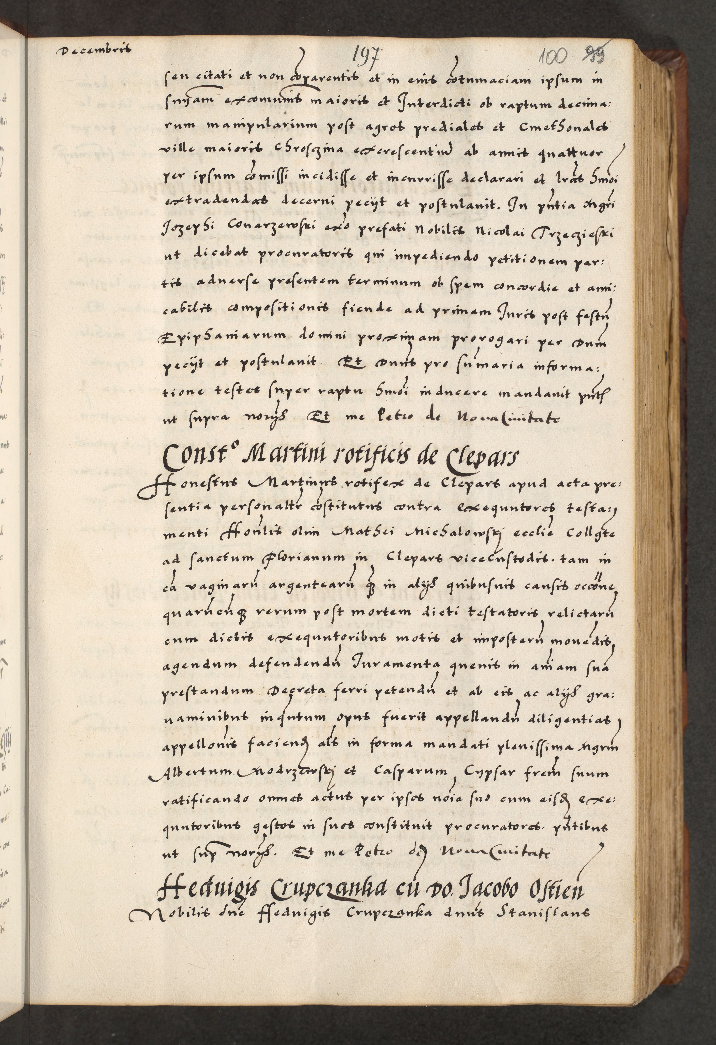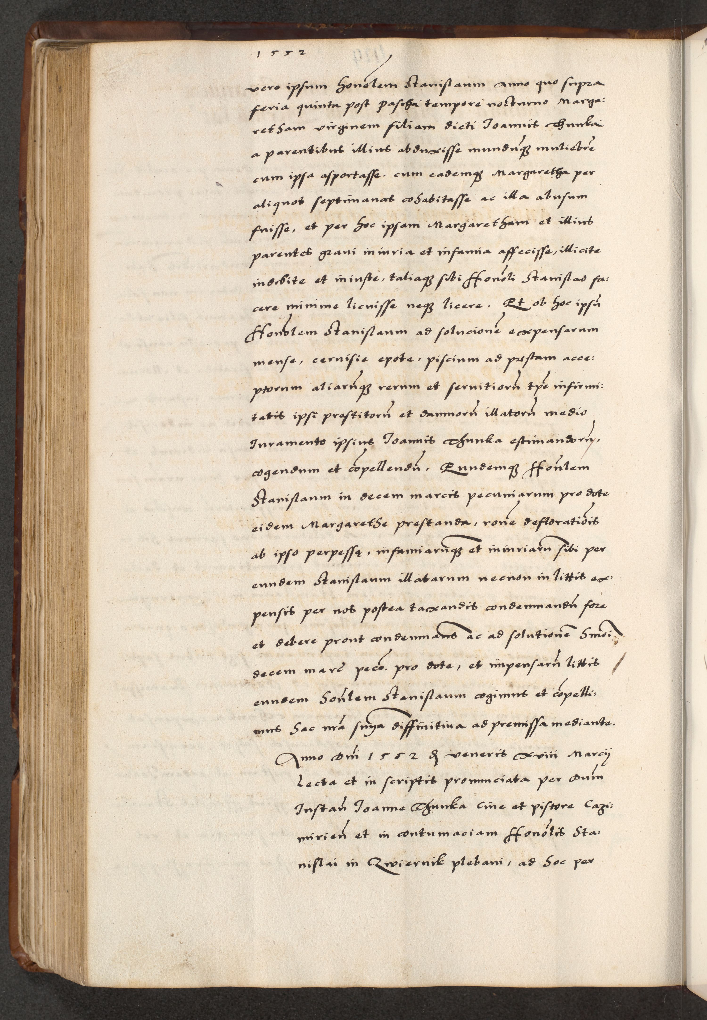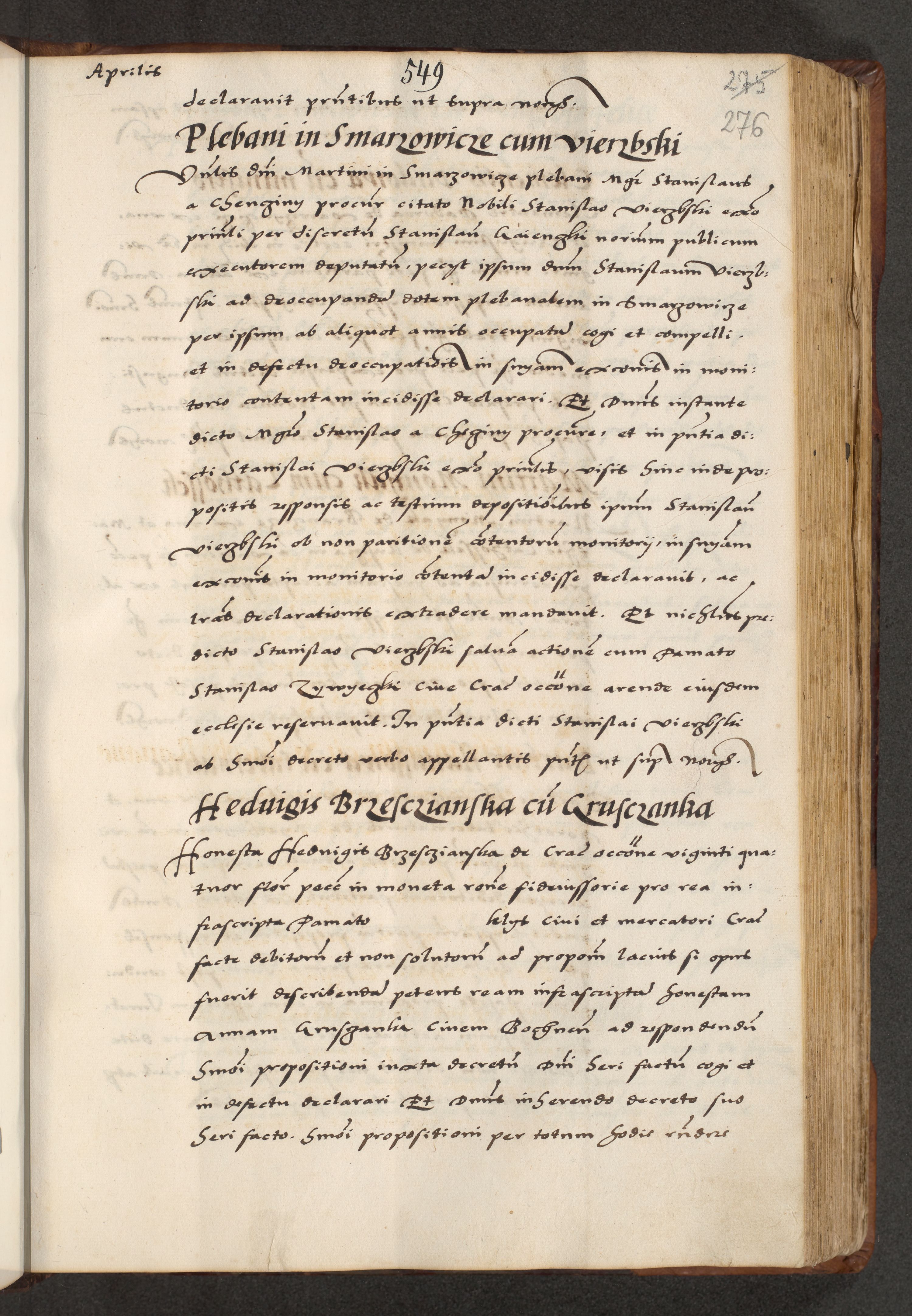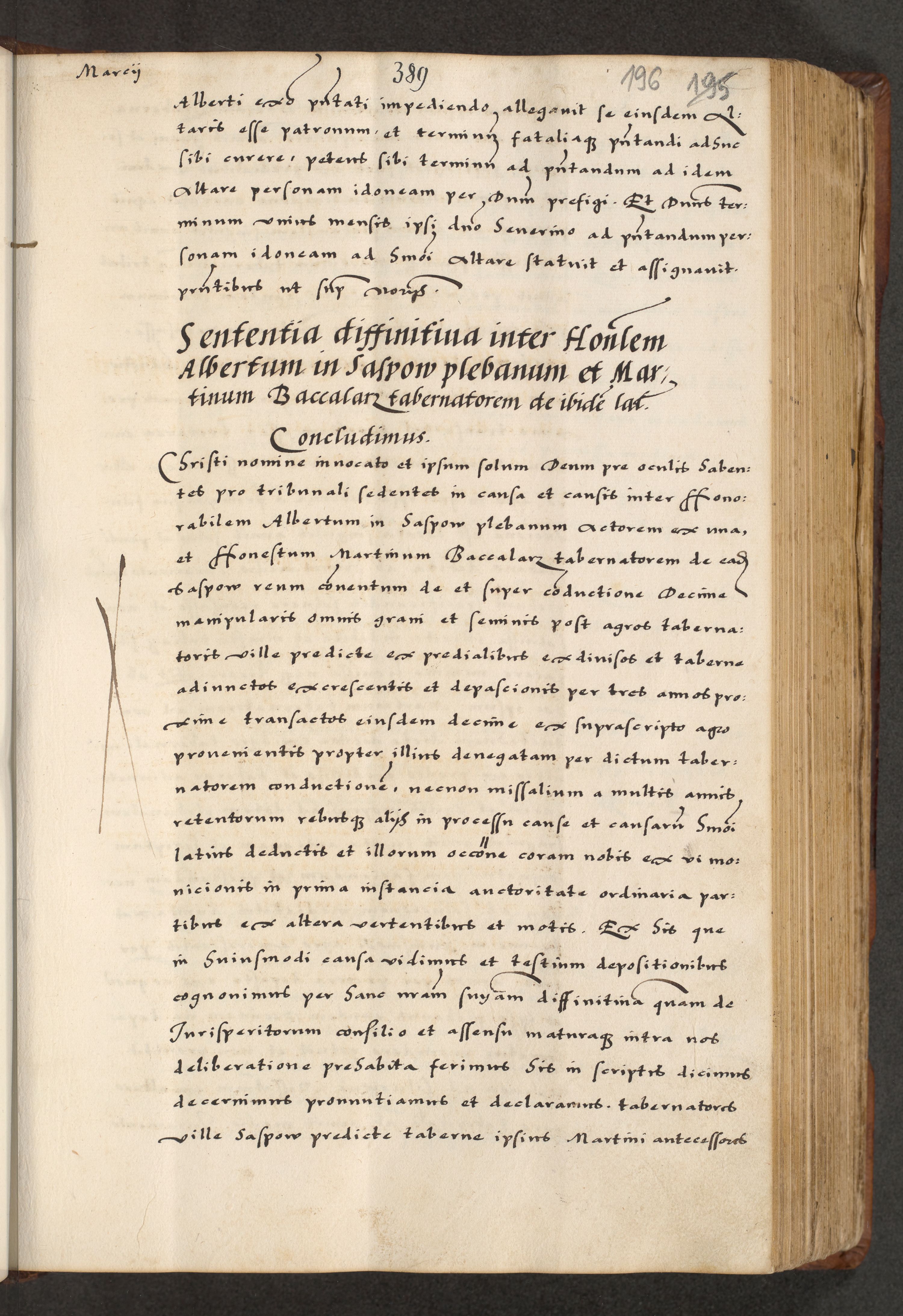 [A]cta actorum causarum, sententiarum tam diffinitivarum quam interloquutoriarum, obligationum, constitutionum et contractuum coram reverendo patre domino Petro Porembski preposito Osvieczimensi, canonico et officiali generali Cracoviensi de anno Domini millesimo quingentesimo quinguagesimo primo, cuius indictio est nona, pontificatus sanctissimi in Christo patris et domini nostri domini Juliii divina providencia pape tercii, anno secundo, a die et mense infrascriptis feliciter continiantur
