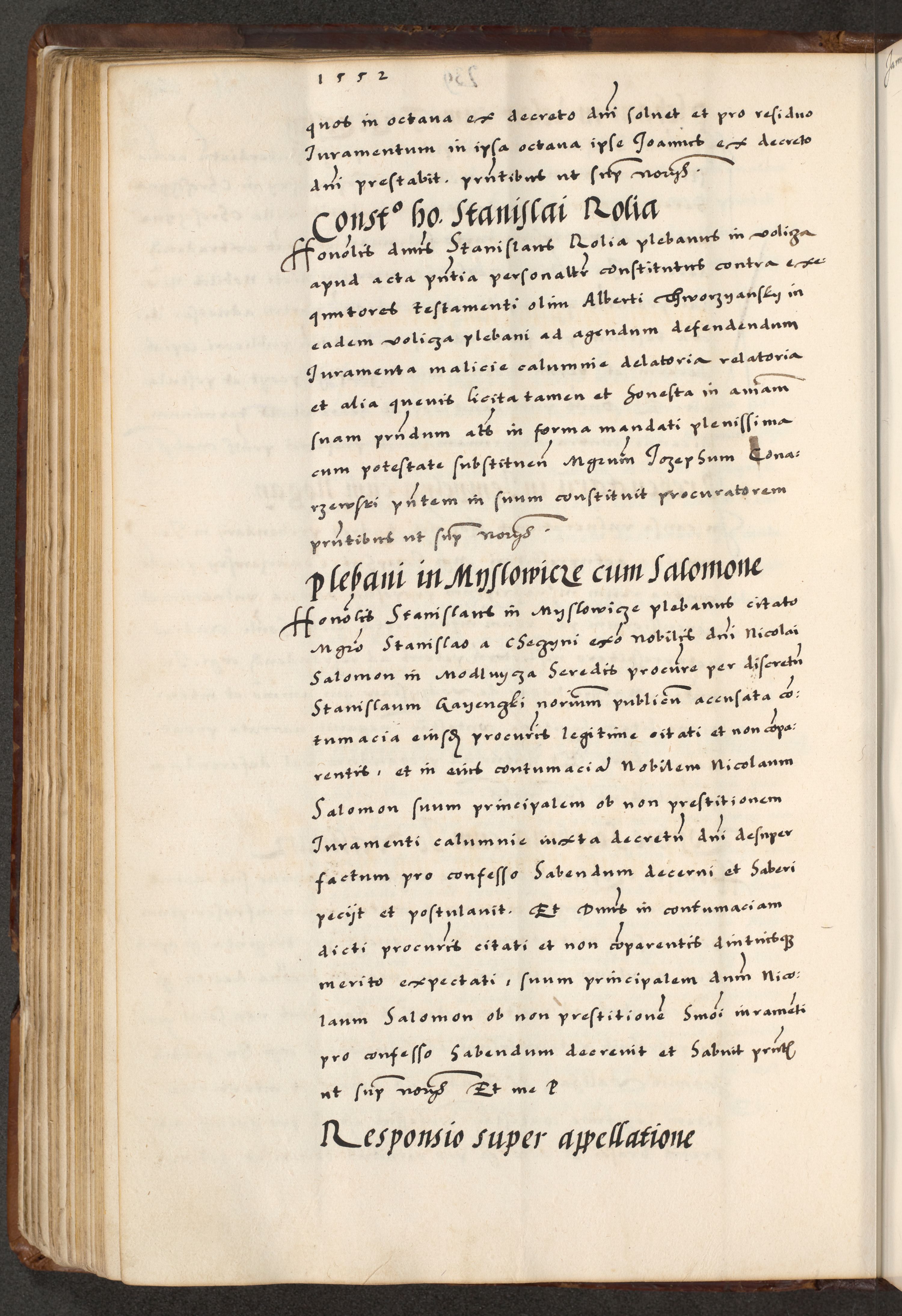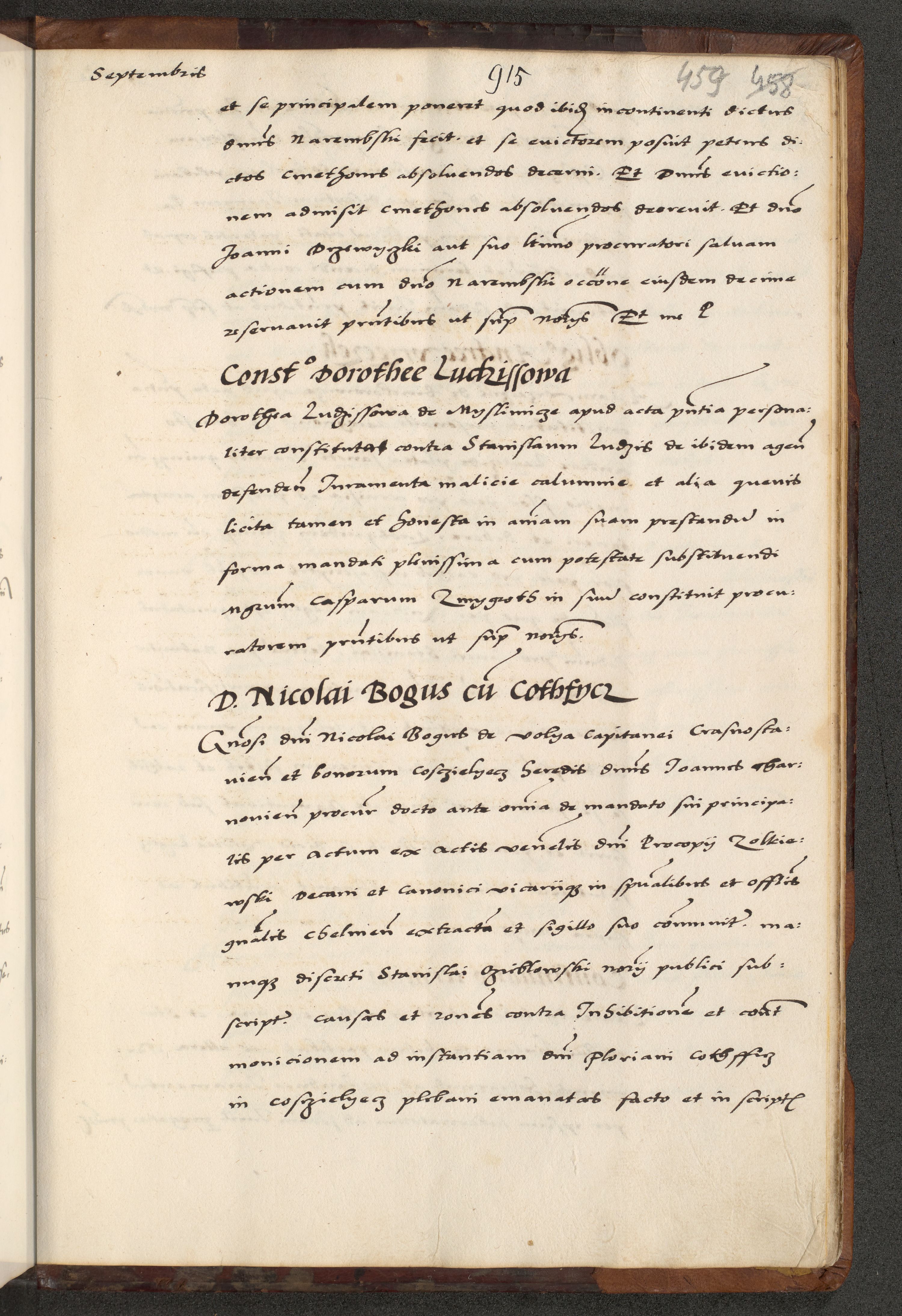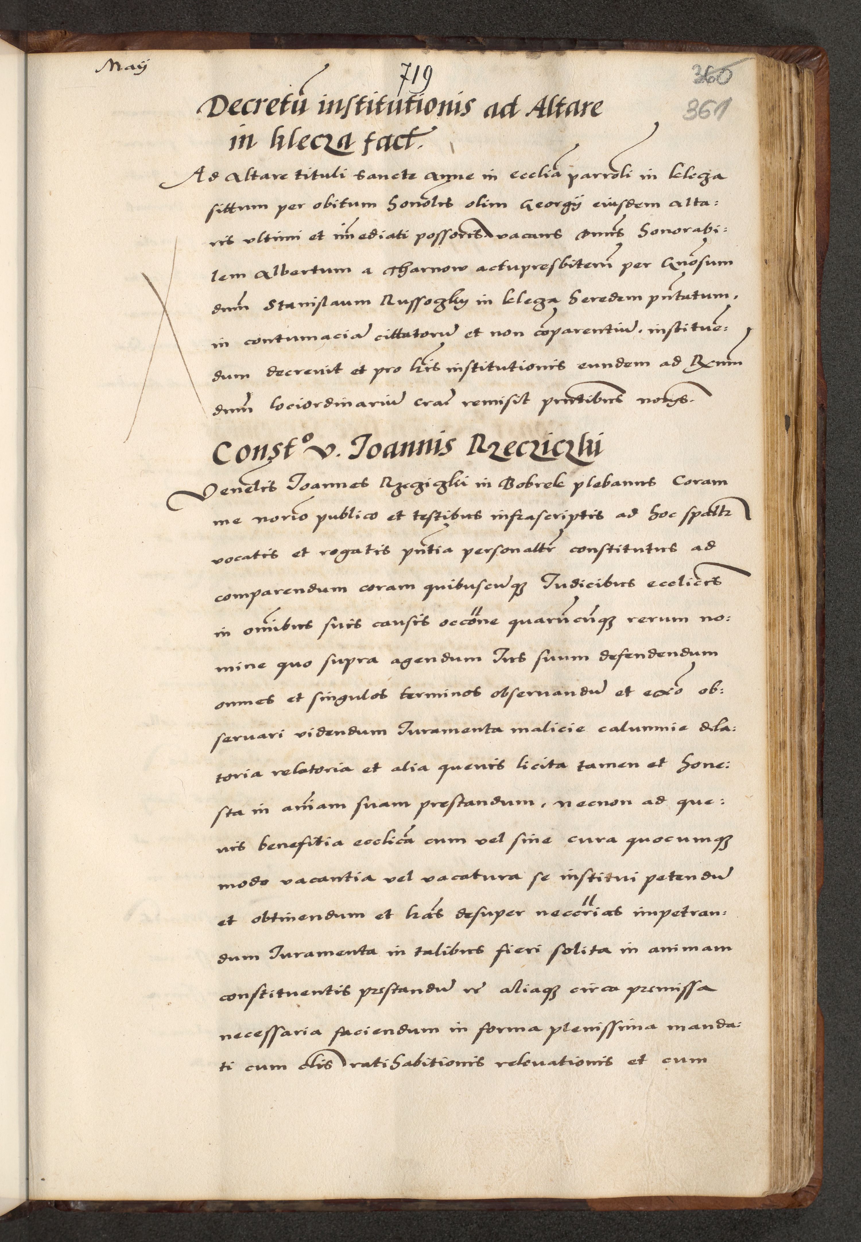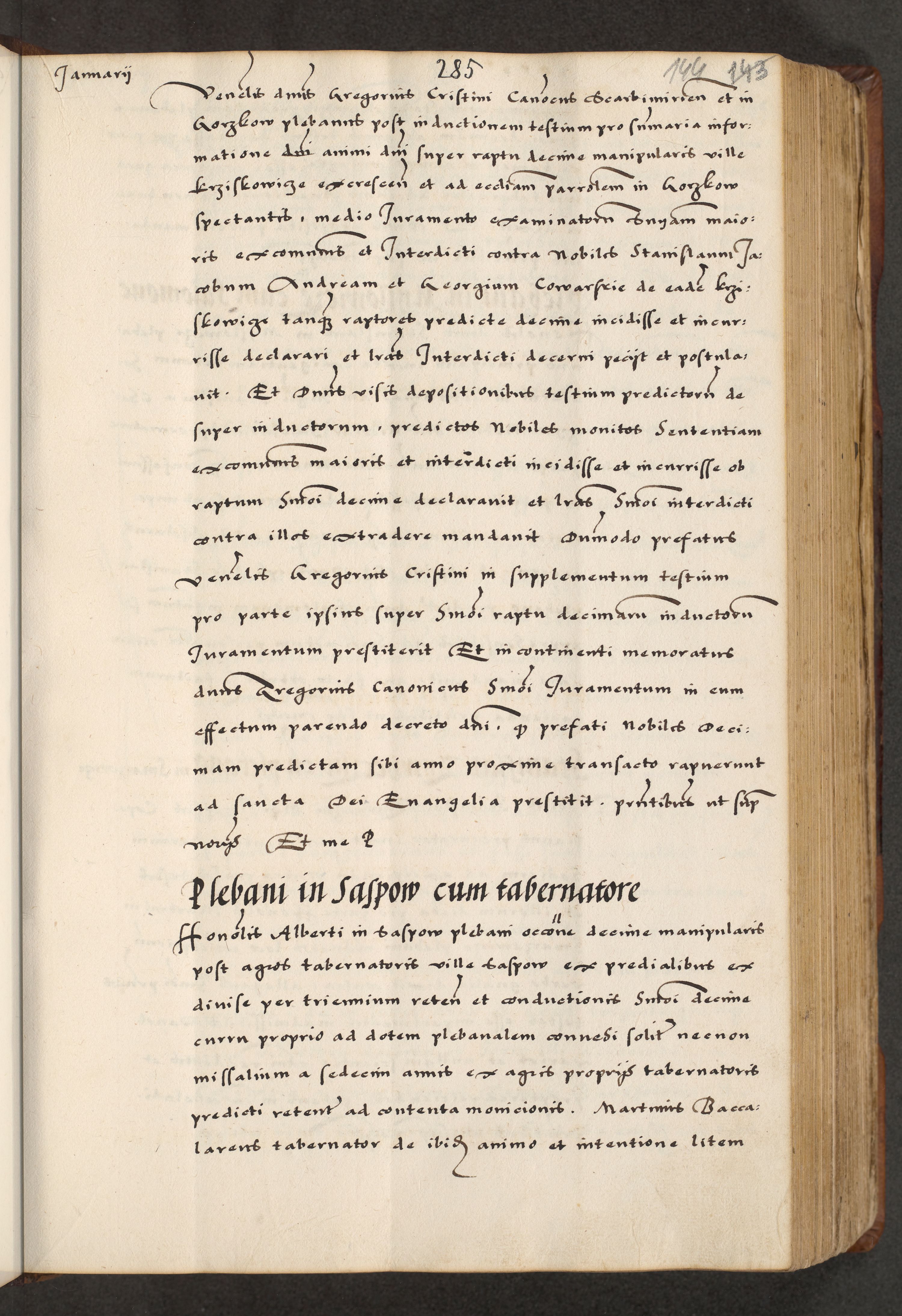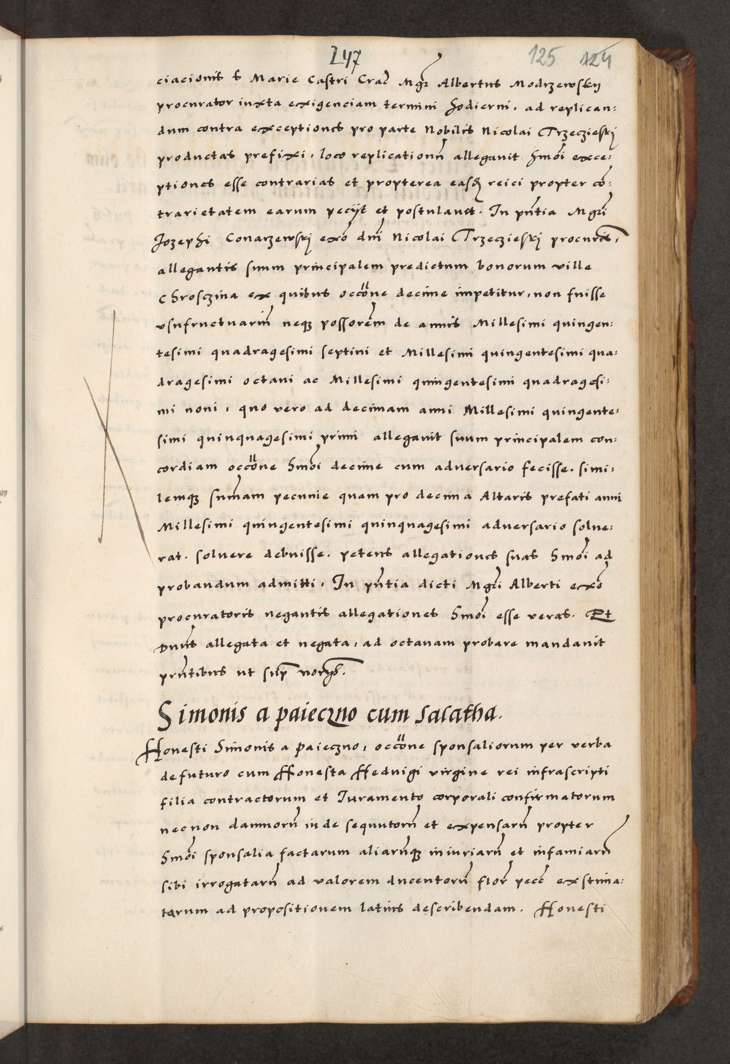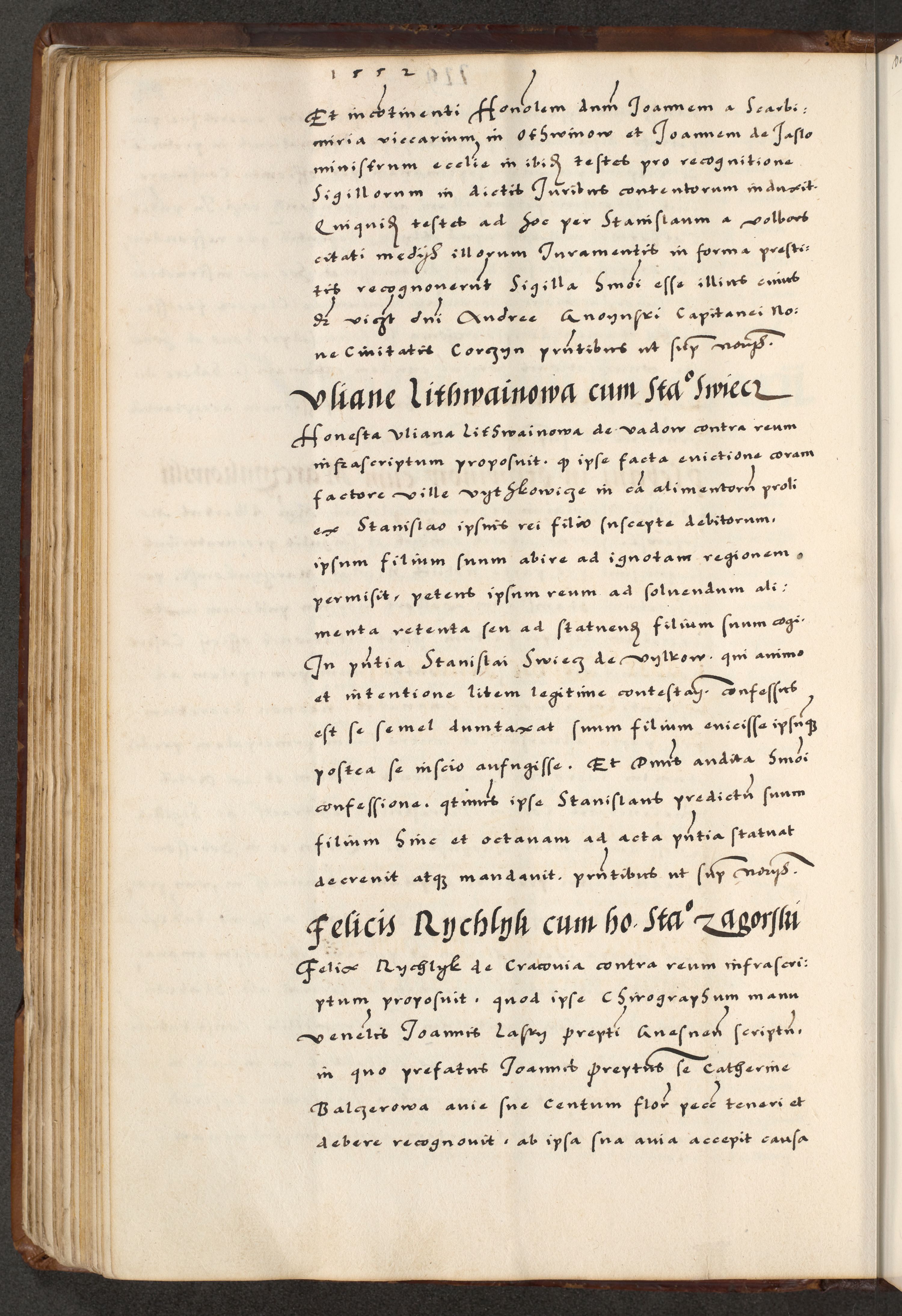 [A]cta actorum causarum, sententiarum tam diffinitivarum quam interloquutoriarum, obligationum, constitutionum et contractuum coram reverendo patre domino Petro Porembski preposito Osvieczimensi, canonico et officiali generali Cracoviensi de anno Domini millesimo quingentesimo quinguagesimo primo, cuius indictio est nona, pontificatus sanctissimi in Christo patris et domini nostri domini Juliii divina providencia pape tercii, anno secundo, a die et mense infrascriptis feliciter continiantur