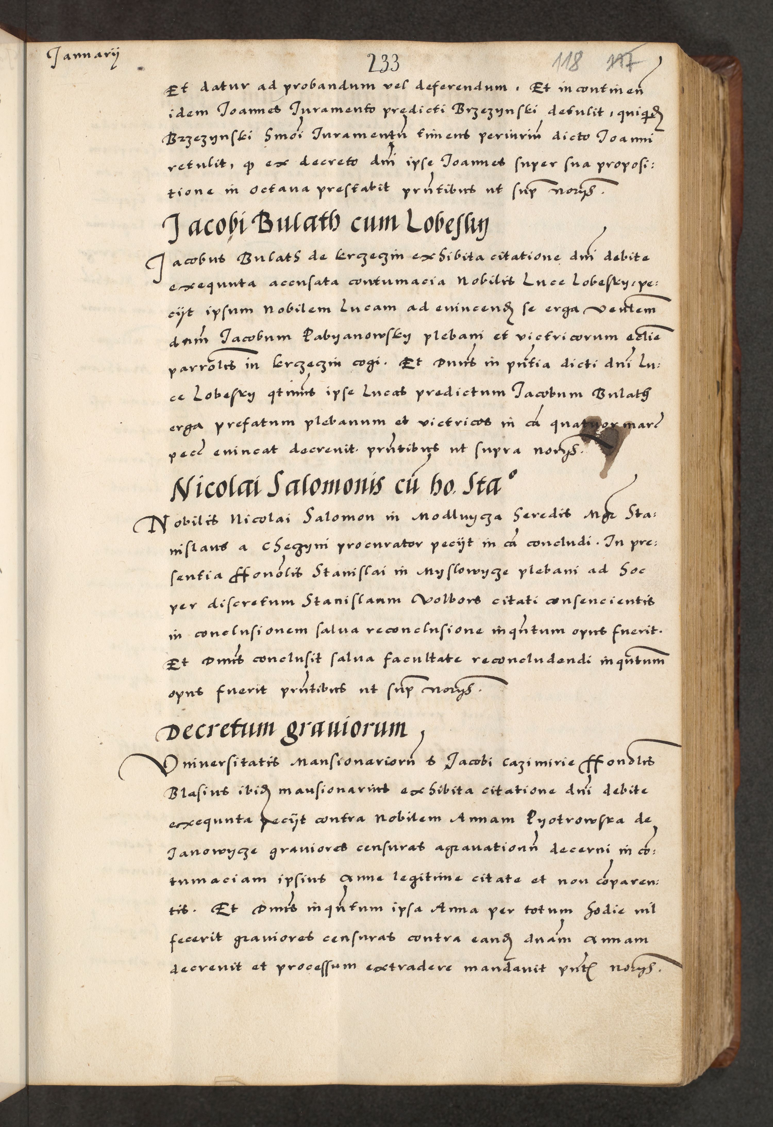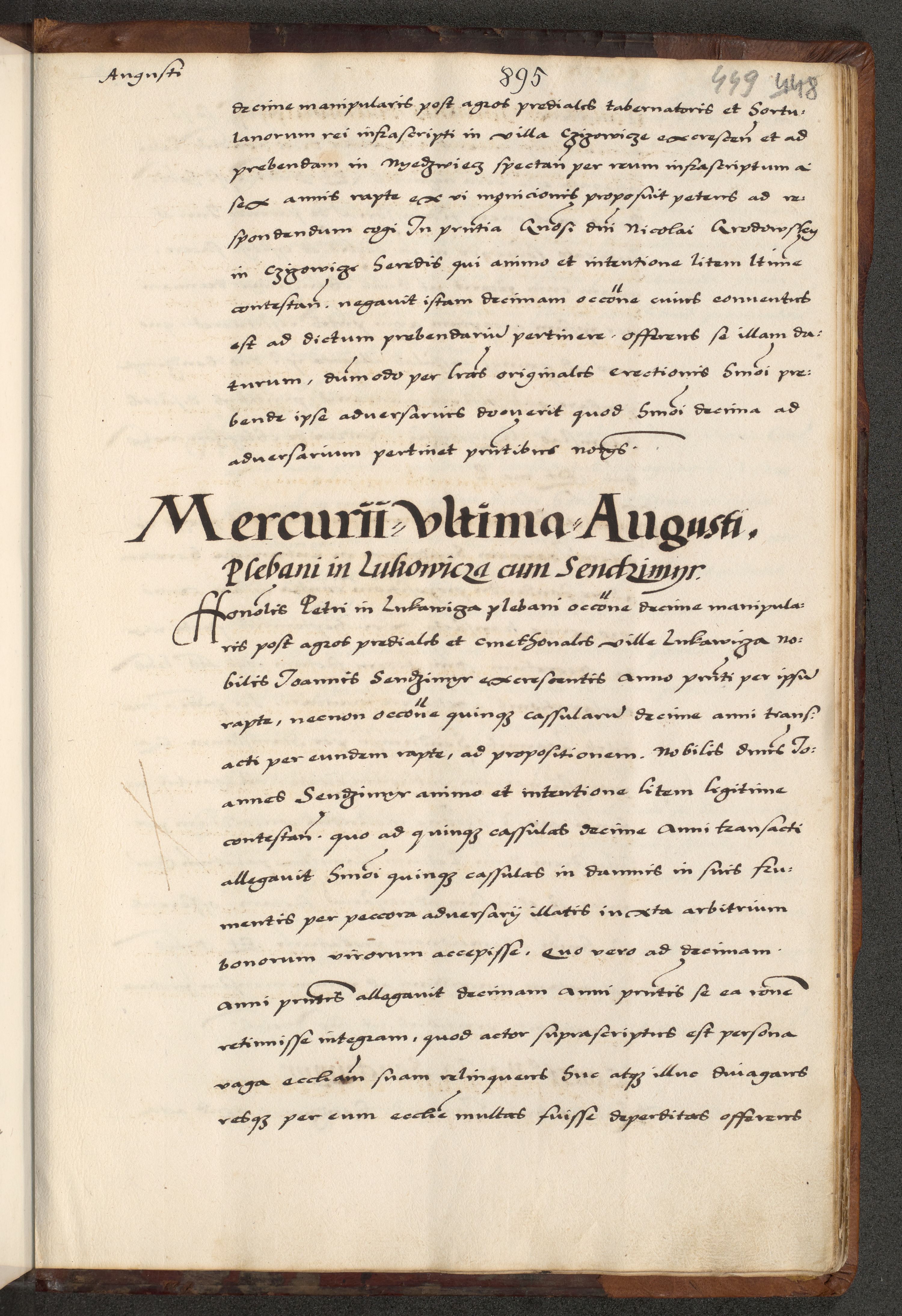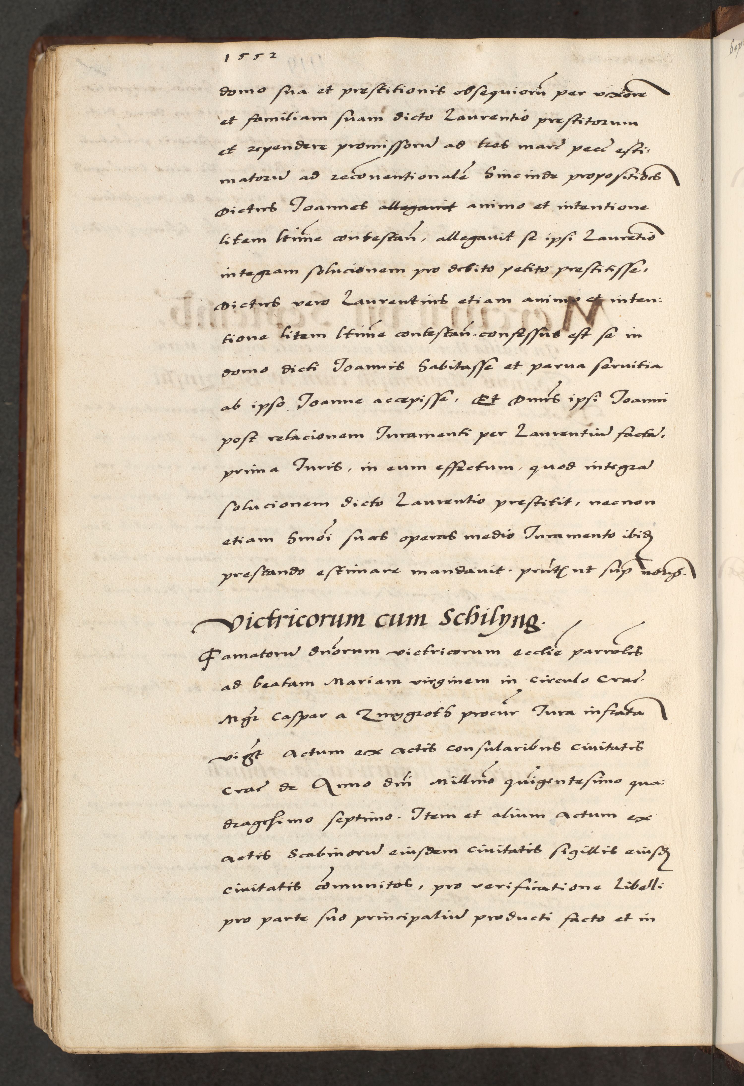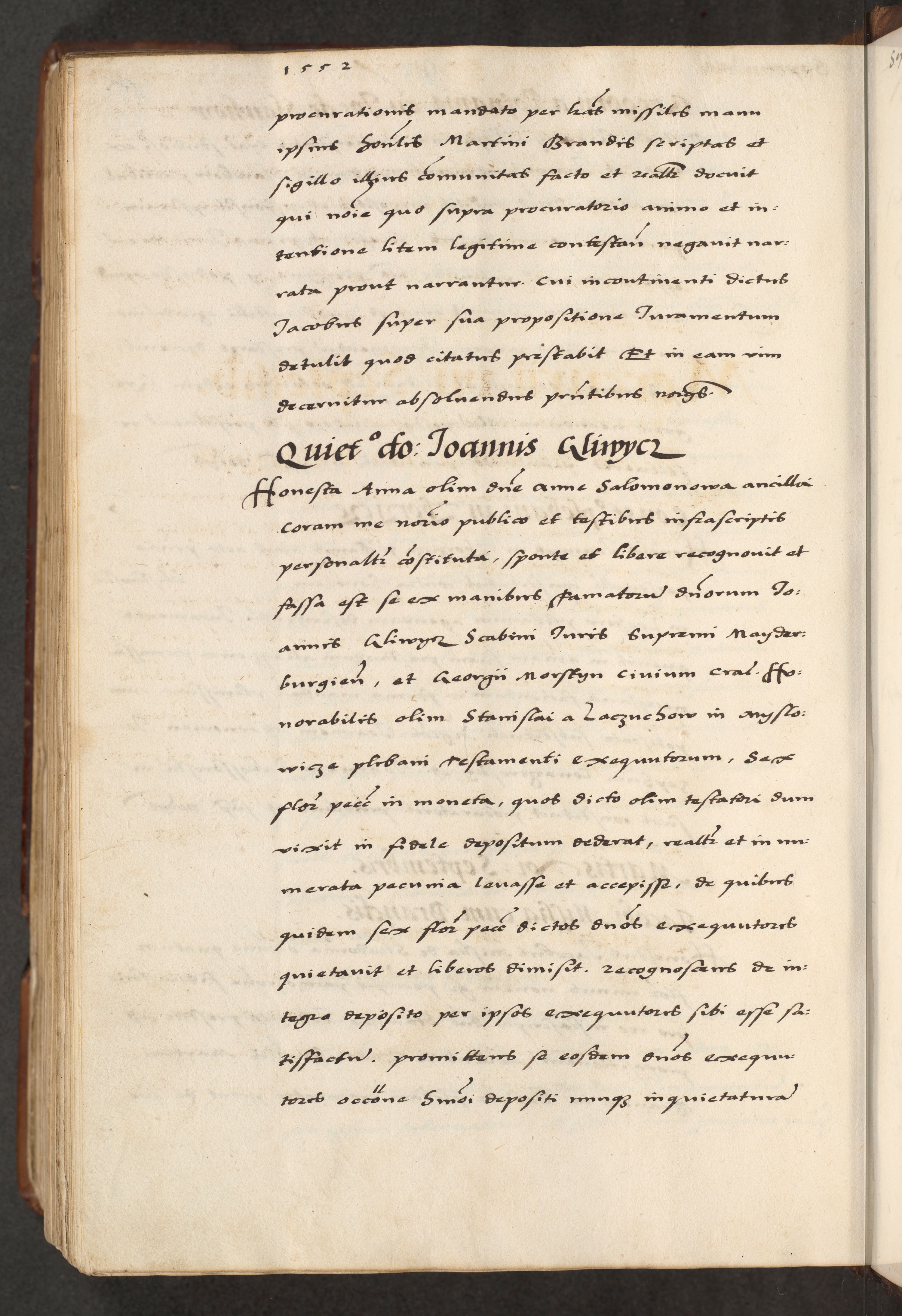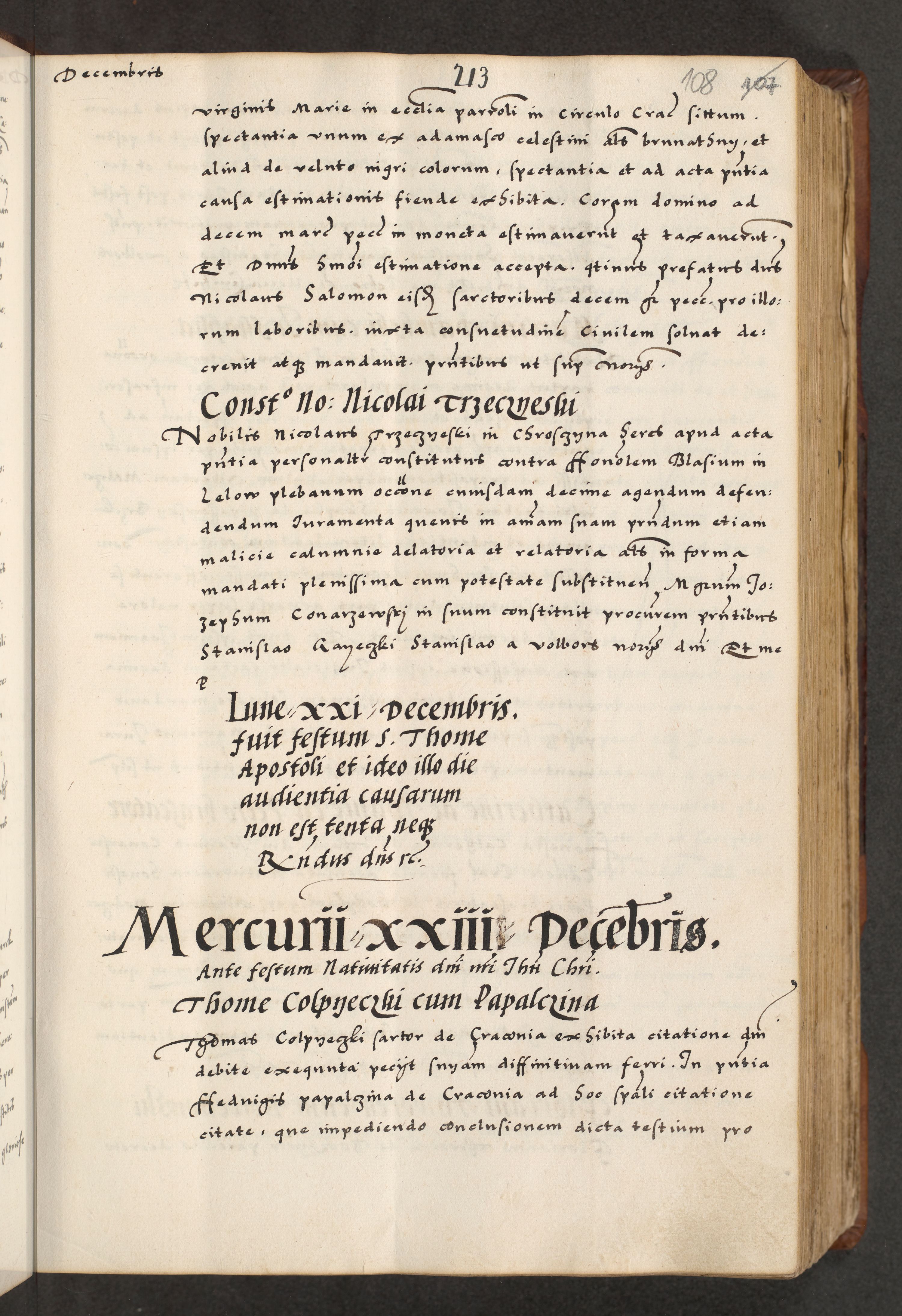 [A]cta actorum causarum, sententiarum tam diffinitivarum quam interloquutoriarum, obligationum, constitutionum et contractuum coram reverendo patre domino Petro Porembski preposito Osvieczimensi, canonico et officiali generali Cracoviensi de anno Domini millesimo quingentesimo quinguagesimo primo, cuius indictio est nona, pontificatus sanctissimi in Christo patris et domini nostri domini Juliii divina providencia pape tercii, anno secundo, a die et mense infrascriptis feliciter continiantur