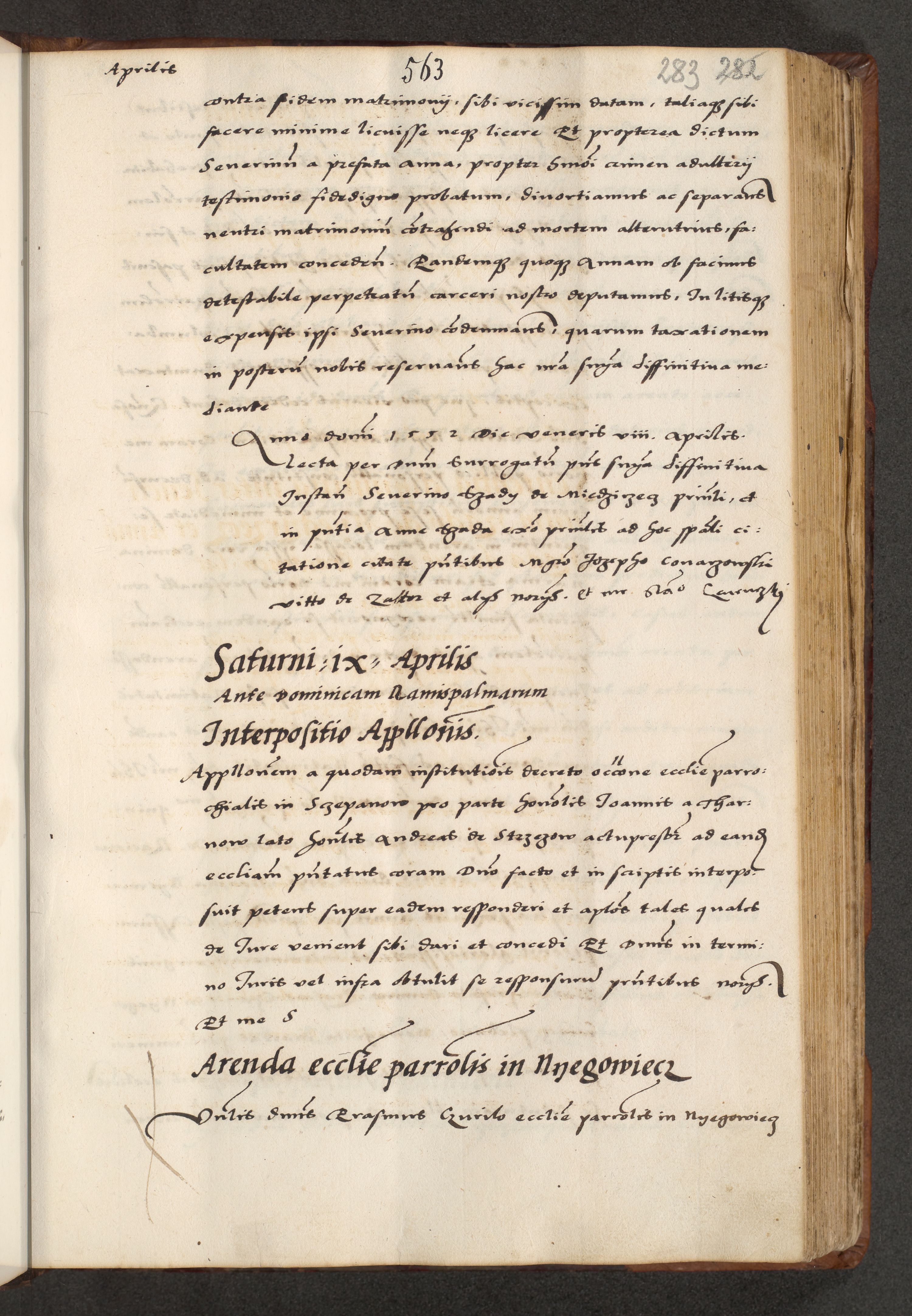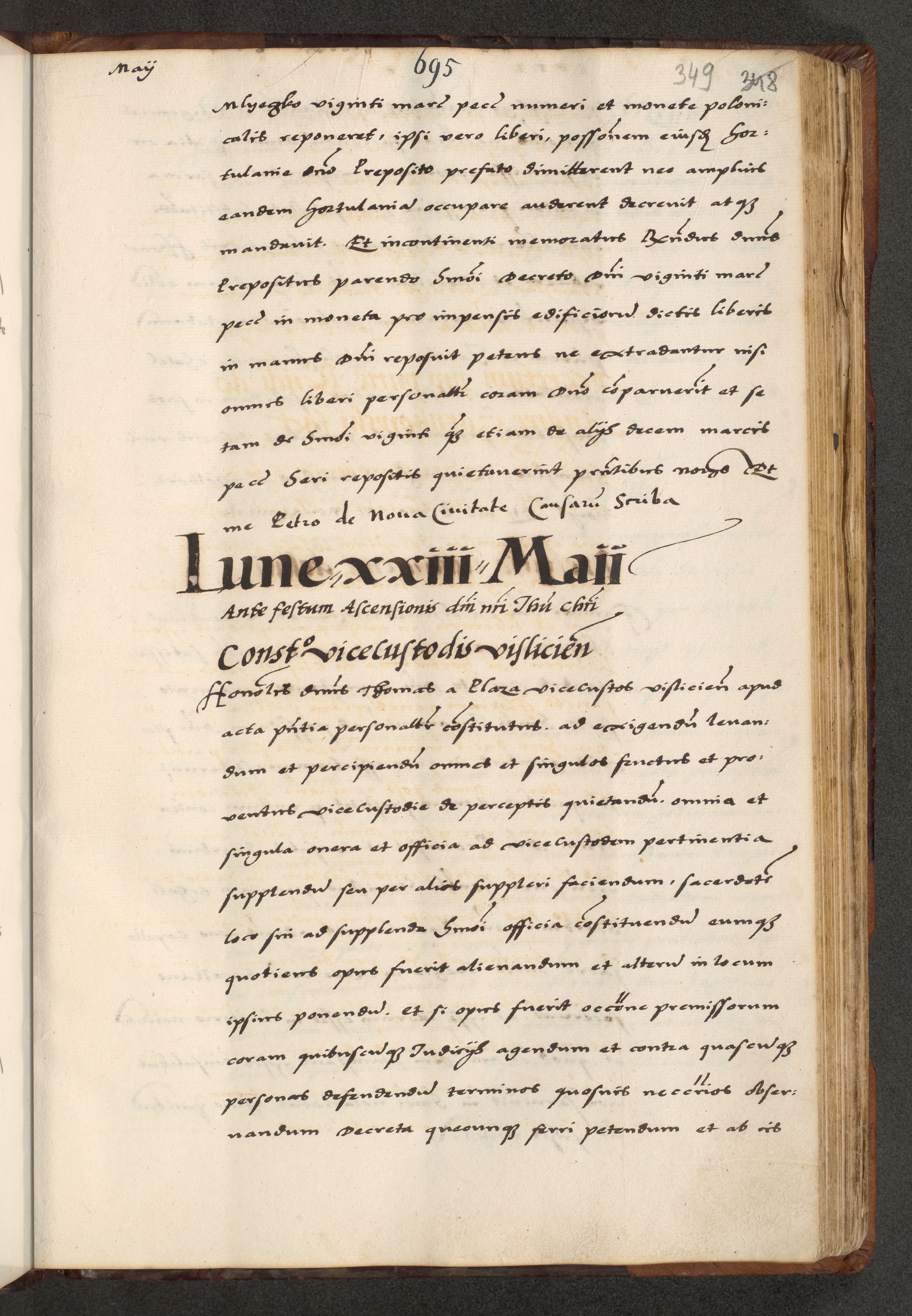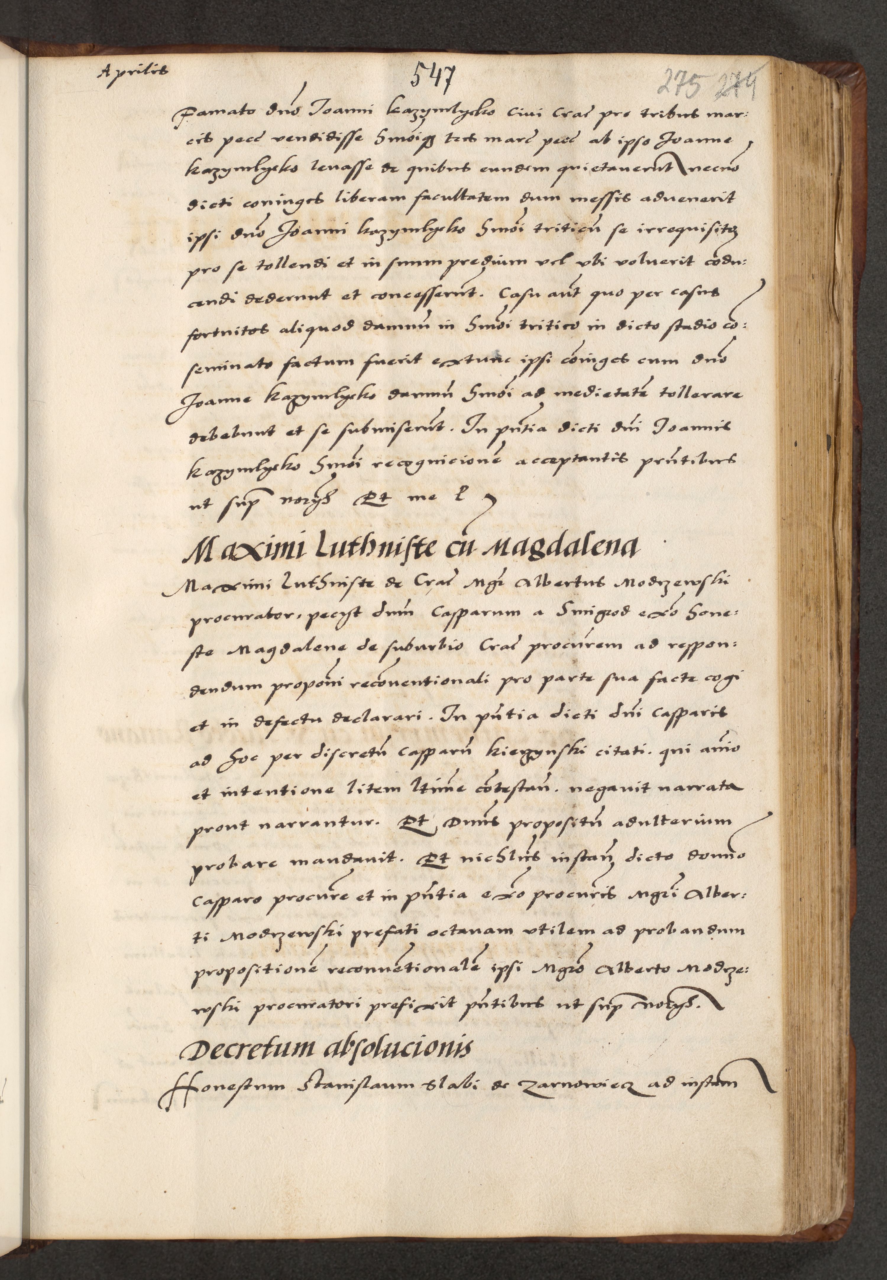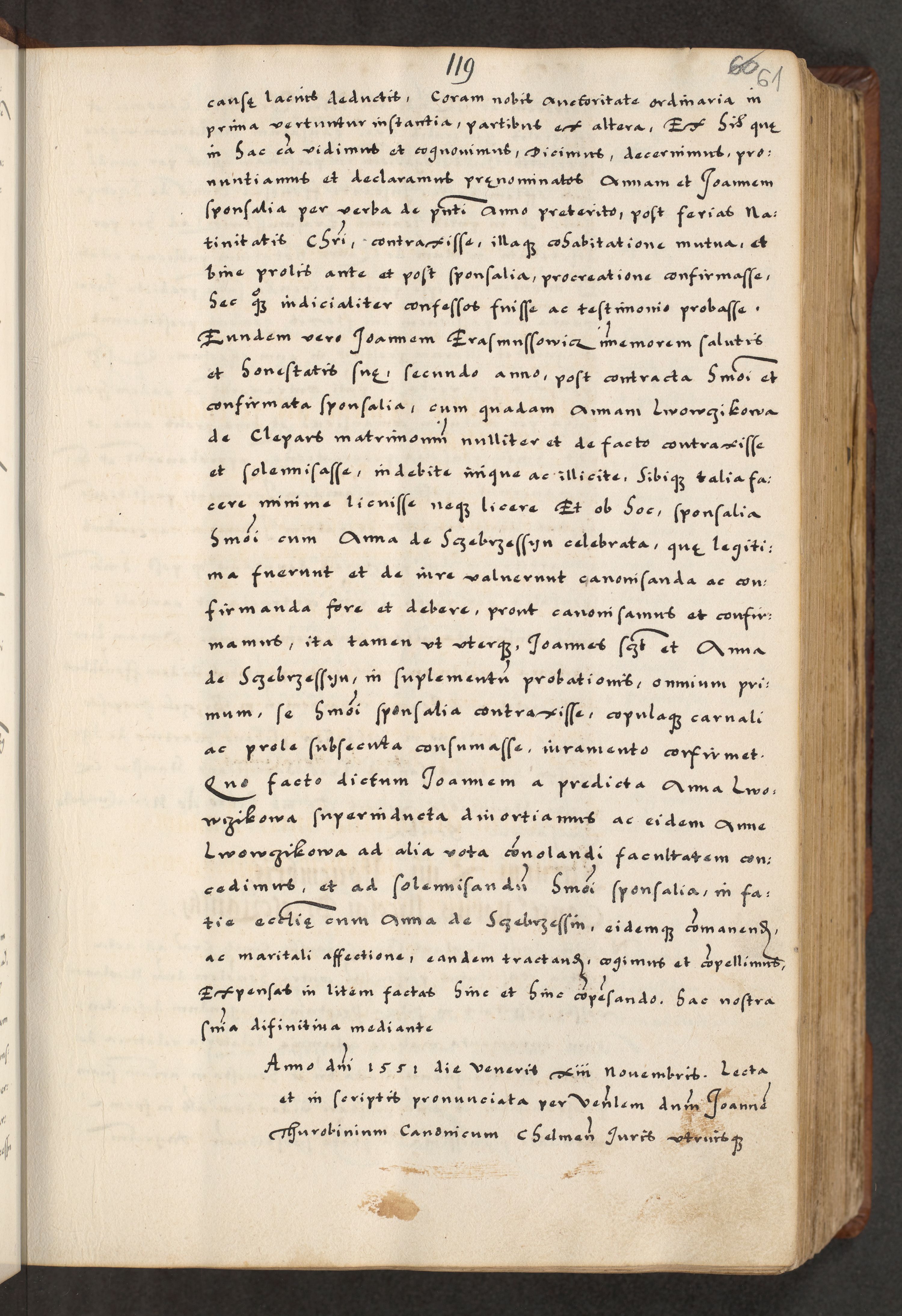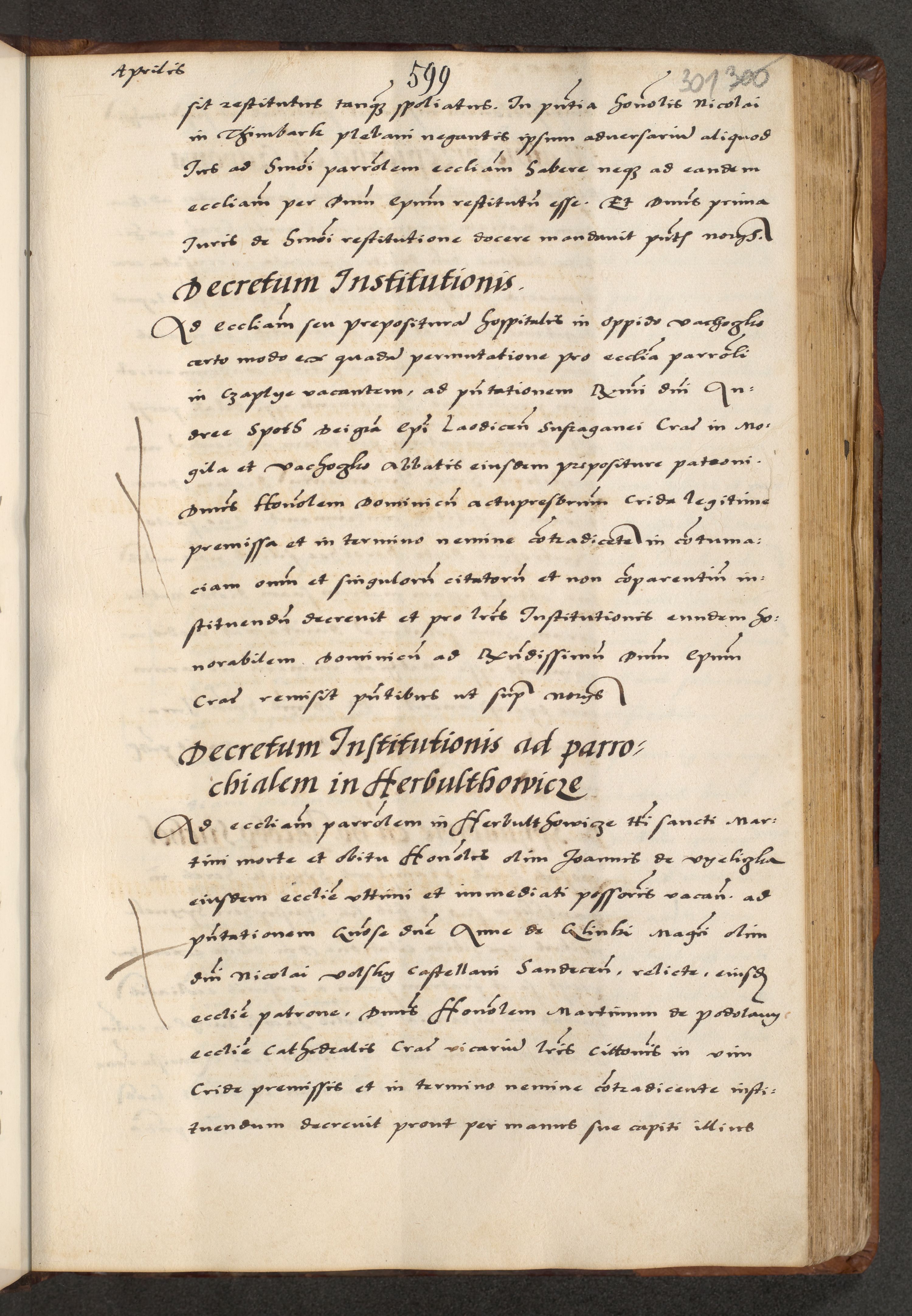 [A]cta actorum causarum, sententiarum tam diffinitivarum quam interloquutoriarum, obligationum, constitutionum et contractuum coram reverendo patre domino Petro Porembski preposito Osvieczimensi, canonico et officiali generali Cracoviensi de anno Domini millesimo quingentesimo quinguagesimo primo, cuius indictio est nona, pontificatus sanctissimi in Christo patris et domini nostri domini Juliii divina providencia pape tercii, anno secundo, a die et mense infrascriptis feliciter continiantur