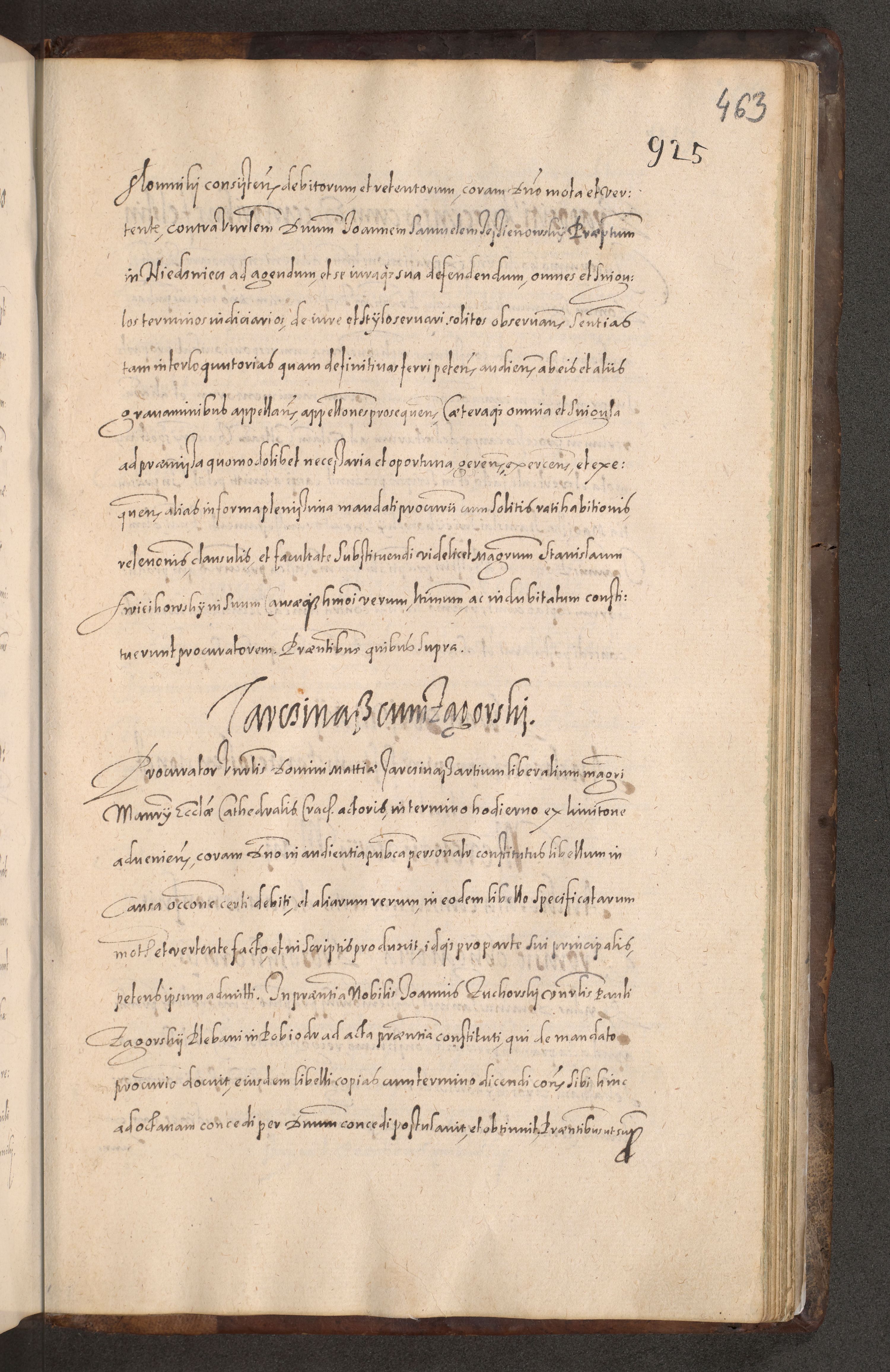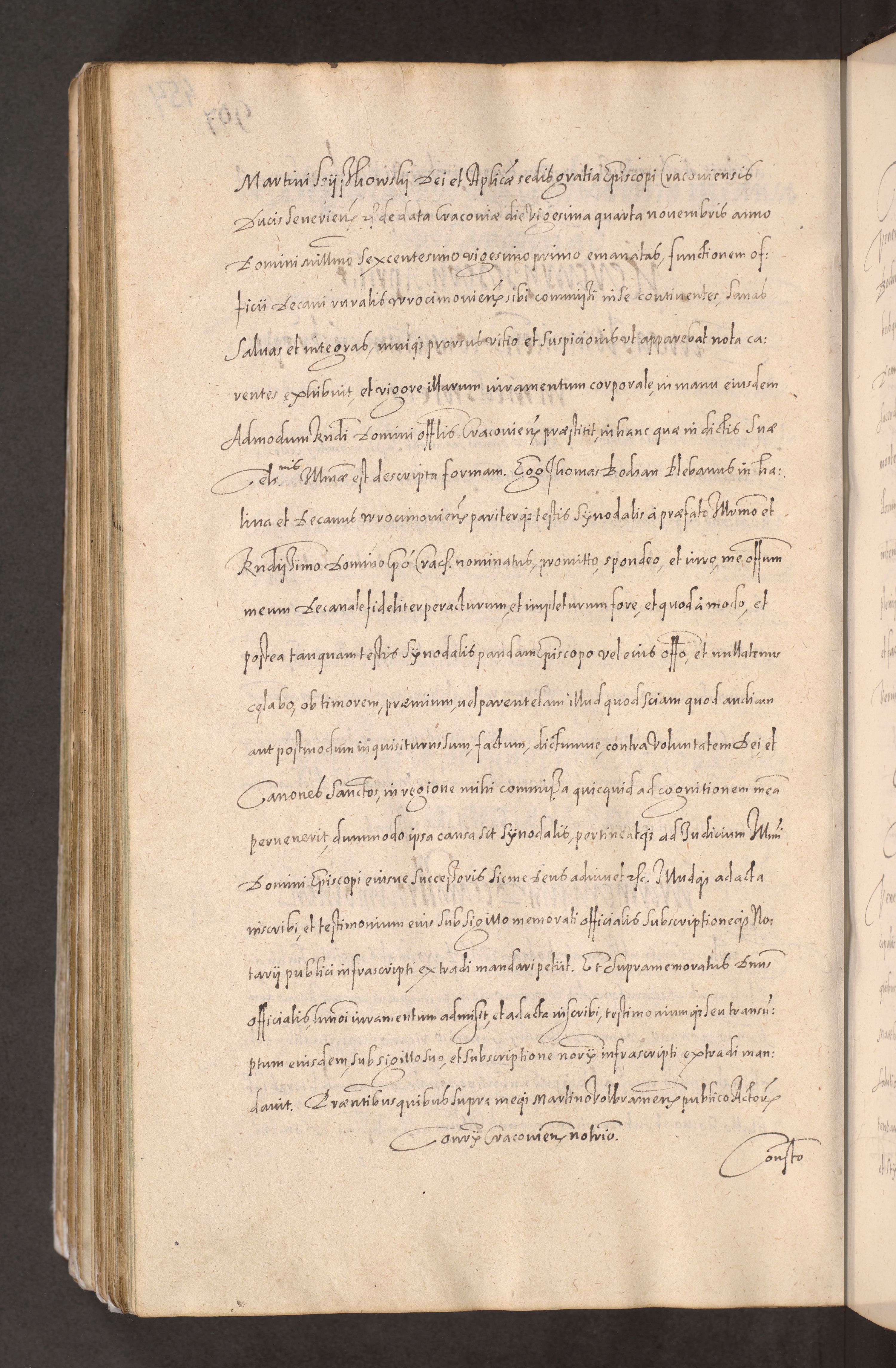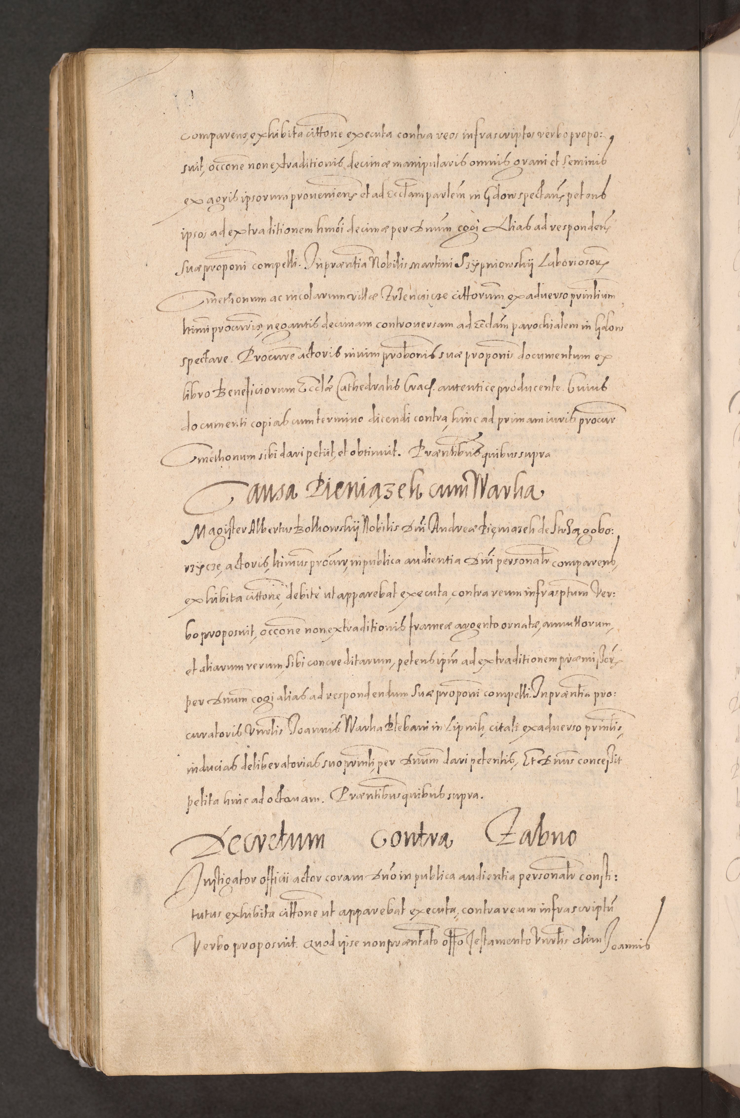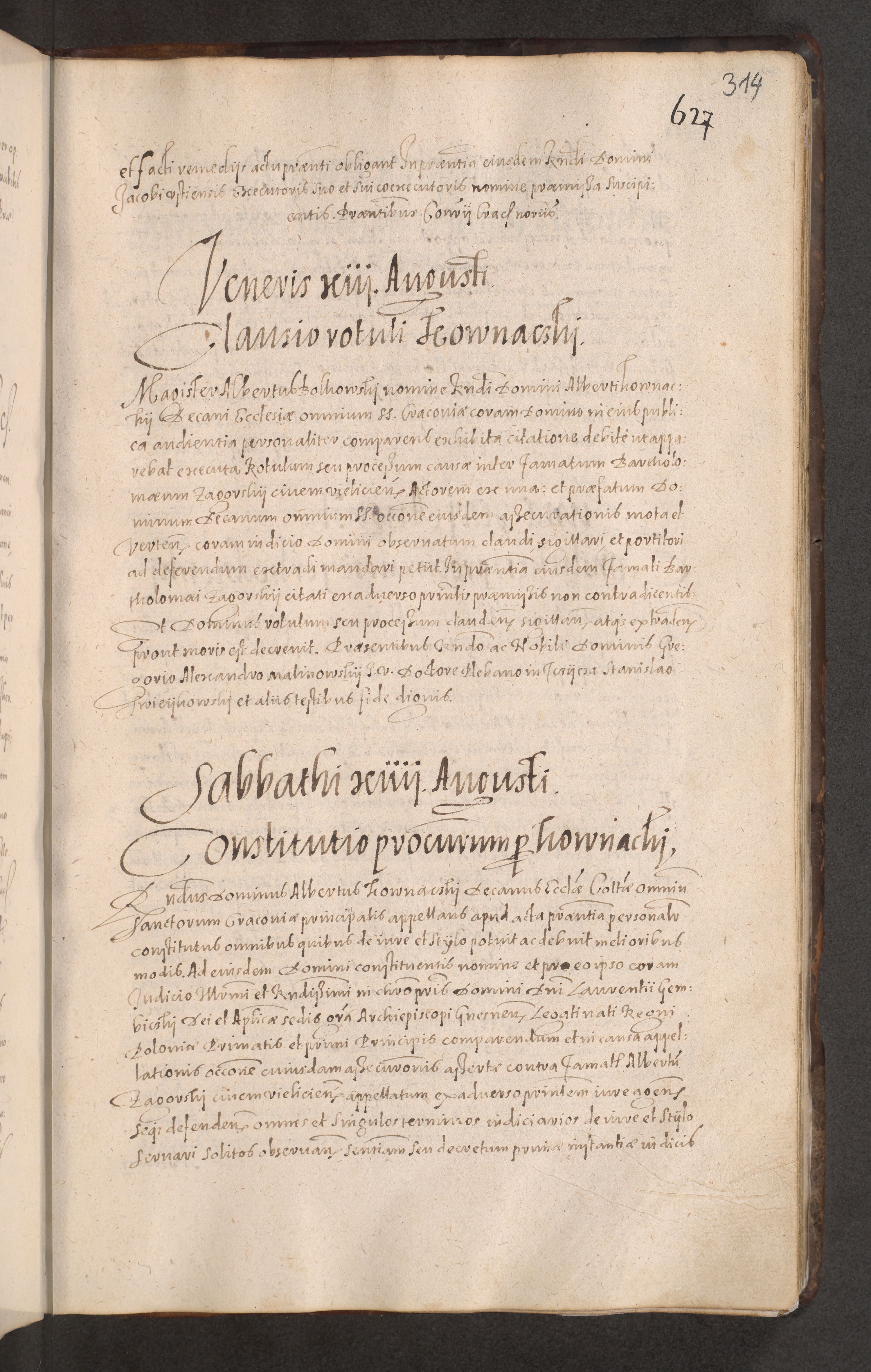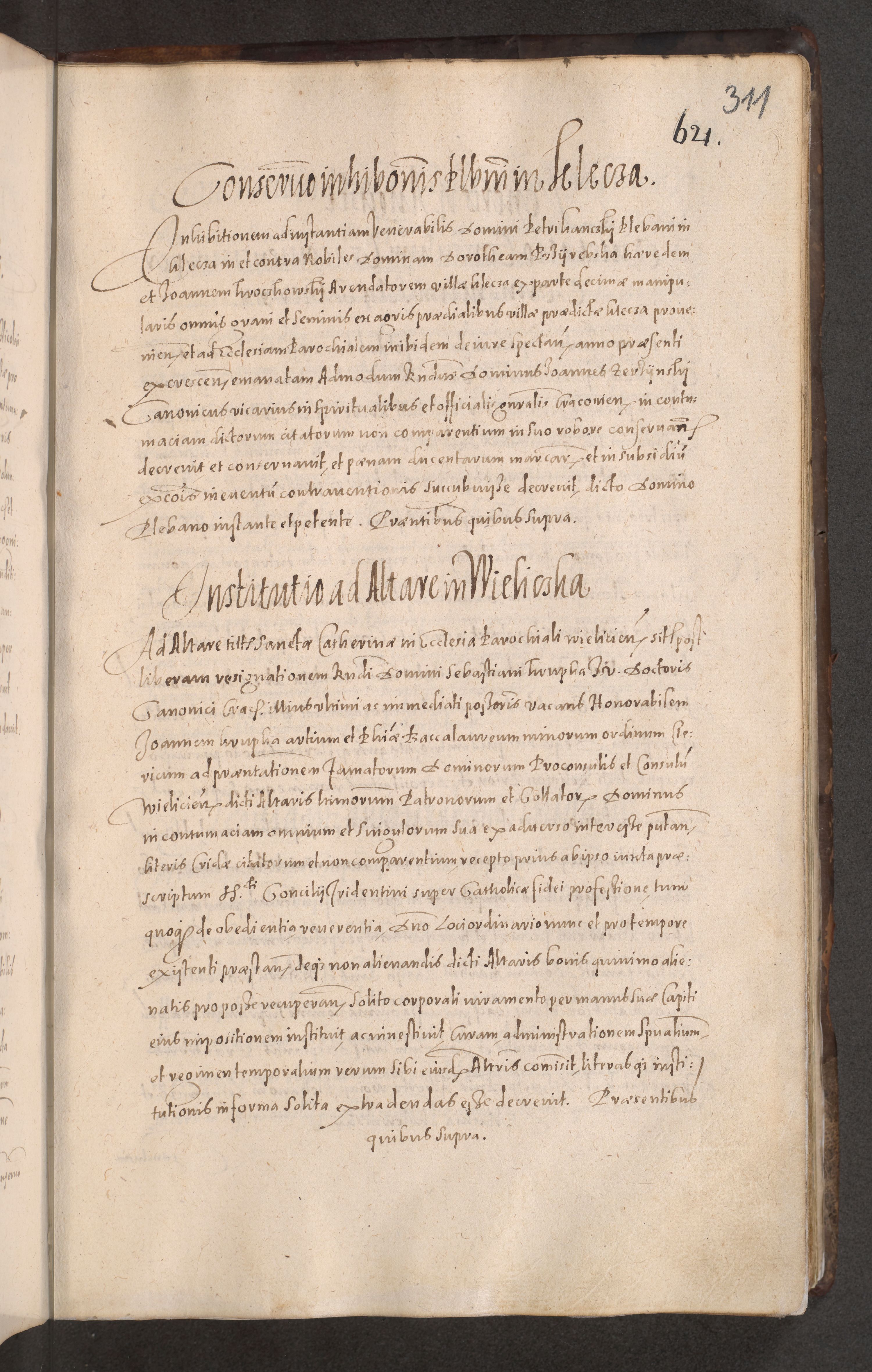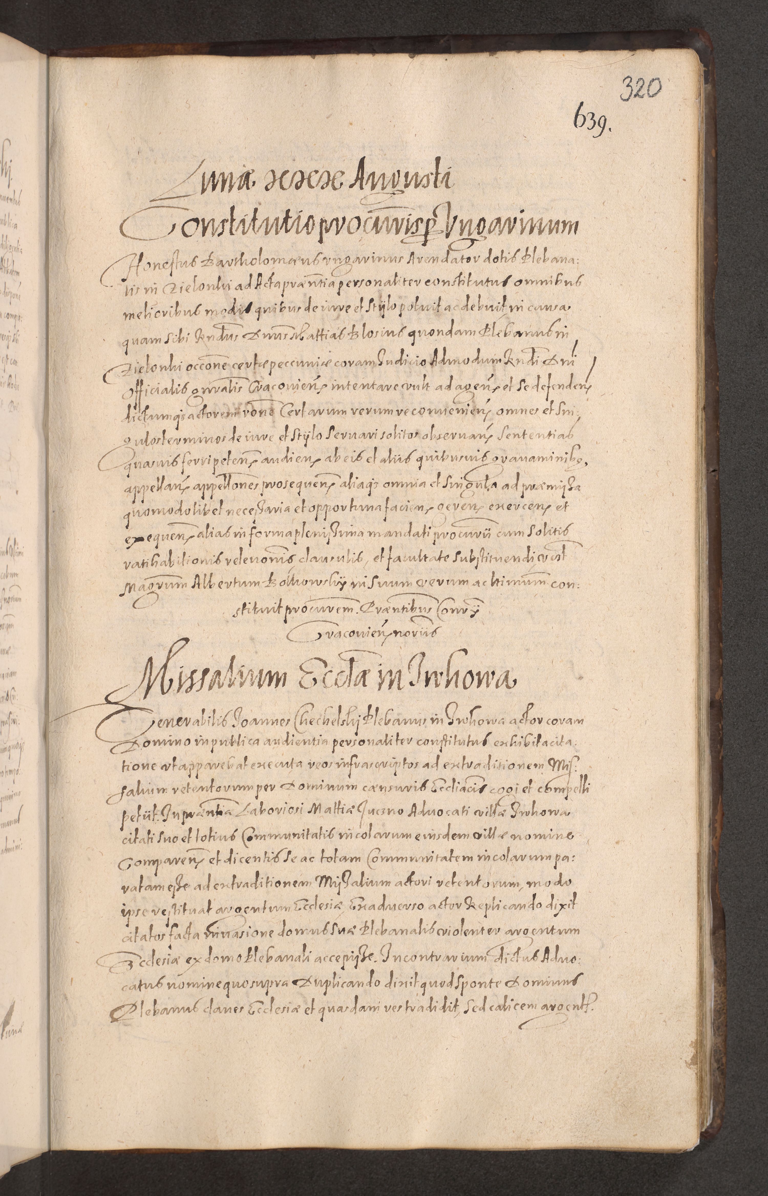 Acta actorum causarum obligationum institutionum decretorum constitutionum quietationum resignationum cissionum et atiaru obsernationum tam indiciariarum quam extra indiciariarum coram Admodum Reverendo Domino Joanne Zerzynski Canonico Vicario in Spiritualibus et Officiali generali Cracoviensis ad Annum Domini Millesimum Sextentissimum Vigesimum Indictione tertia Pontificatus SSmi D. N. D. Pauli Divina pronidentia Papae V. foeliciter moderni anno ipsins subfelici regimine Diocesis Cracoviensis Illustrissimi ac Reverendissimi D. N. D. Martini Szyszkowski Deigratia Episcopus Cracoviensis Ducis Severiensis in continuantur.