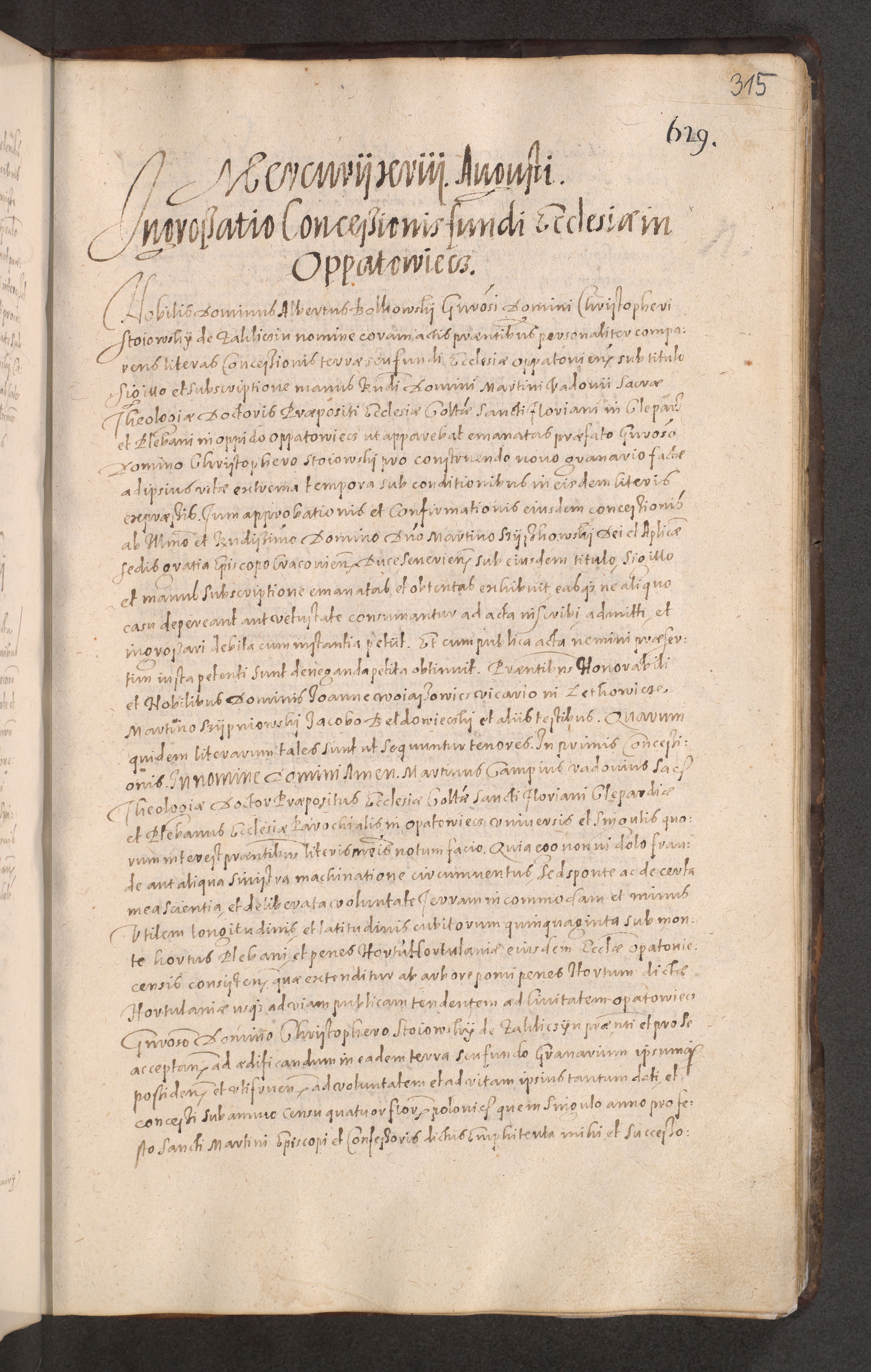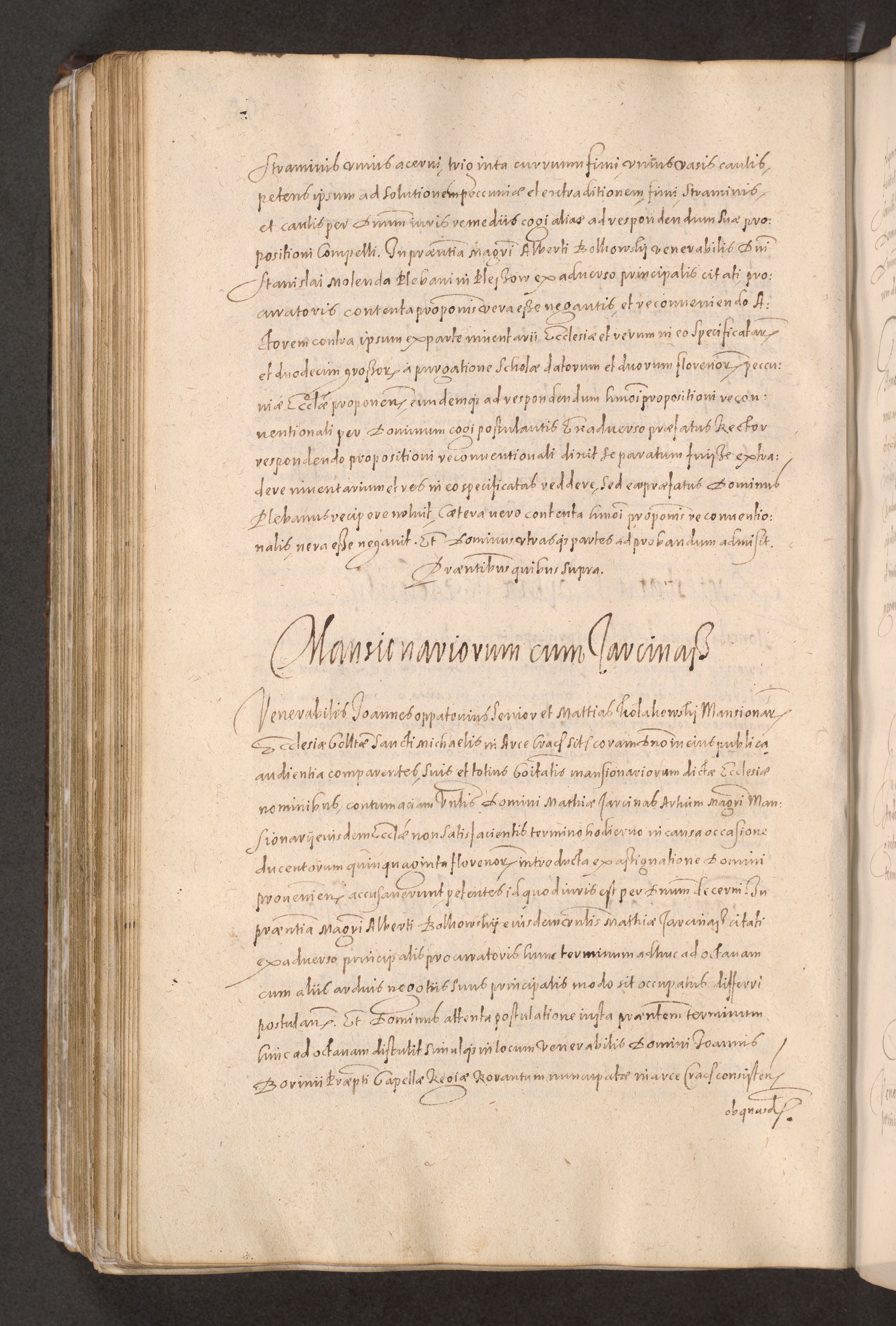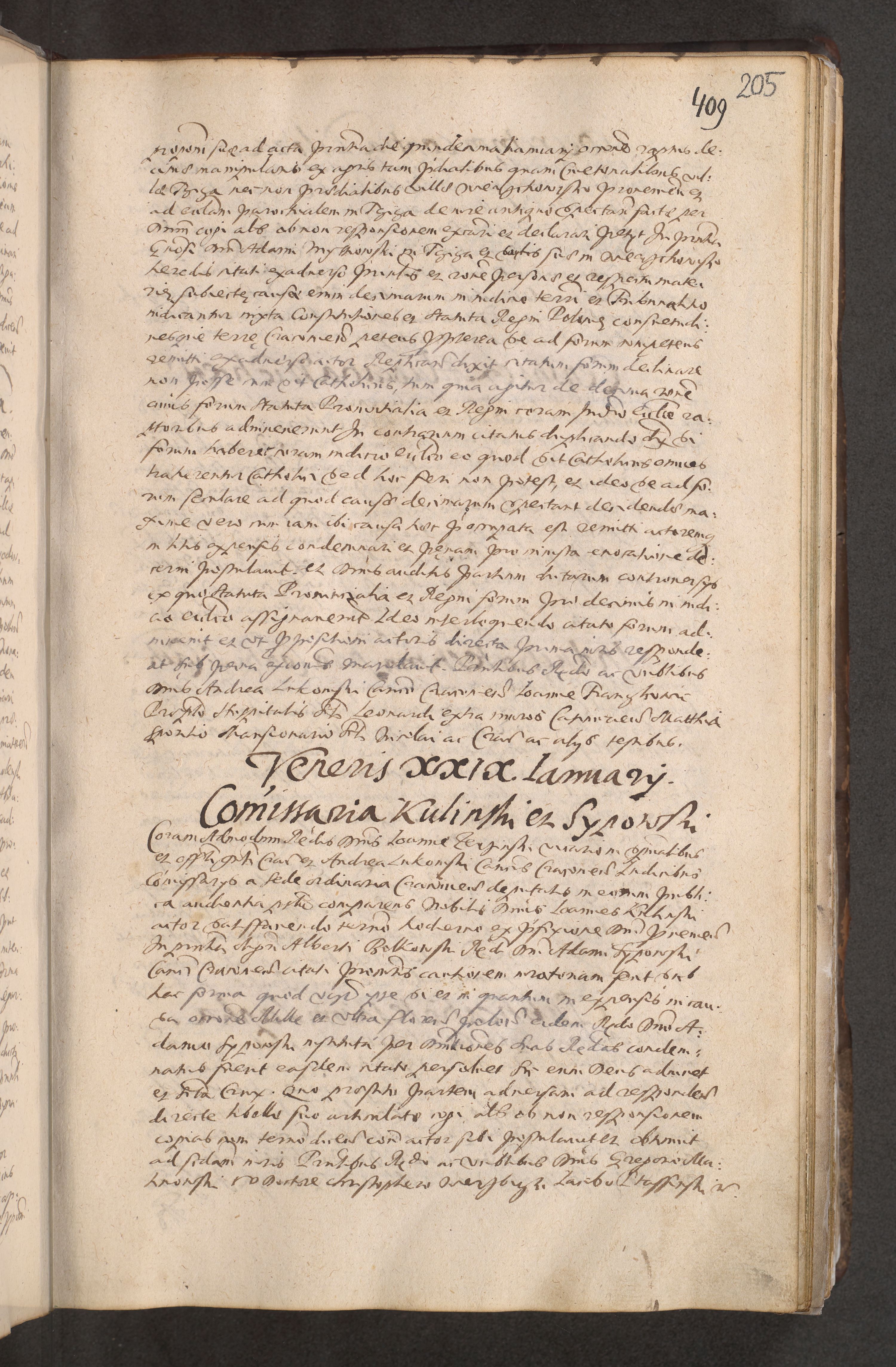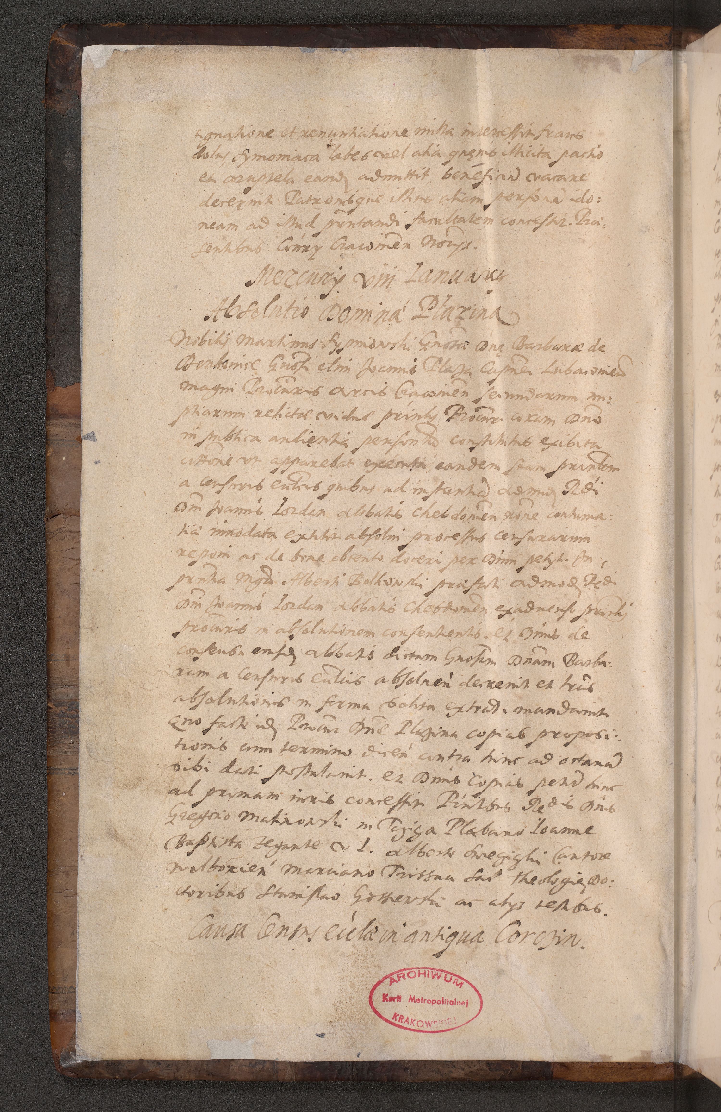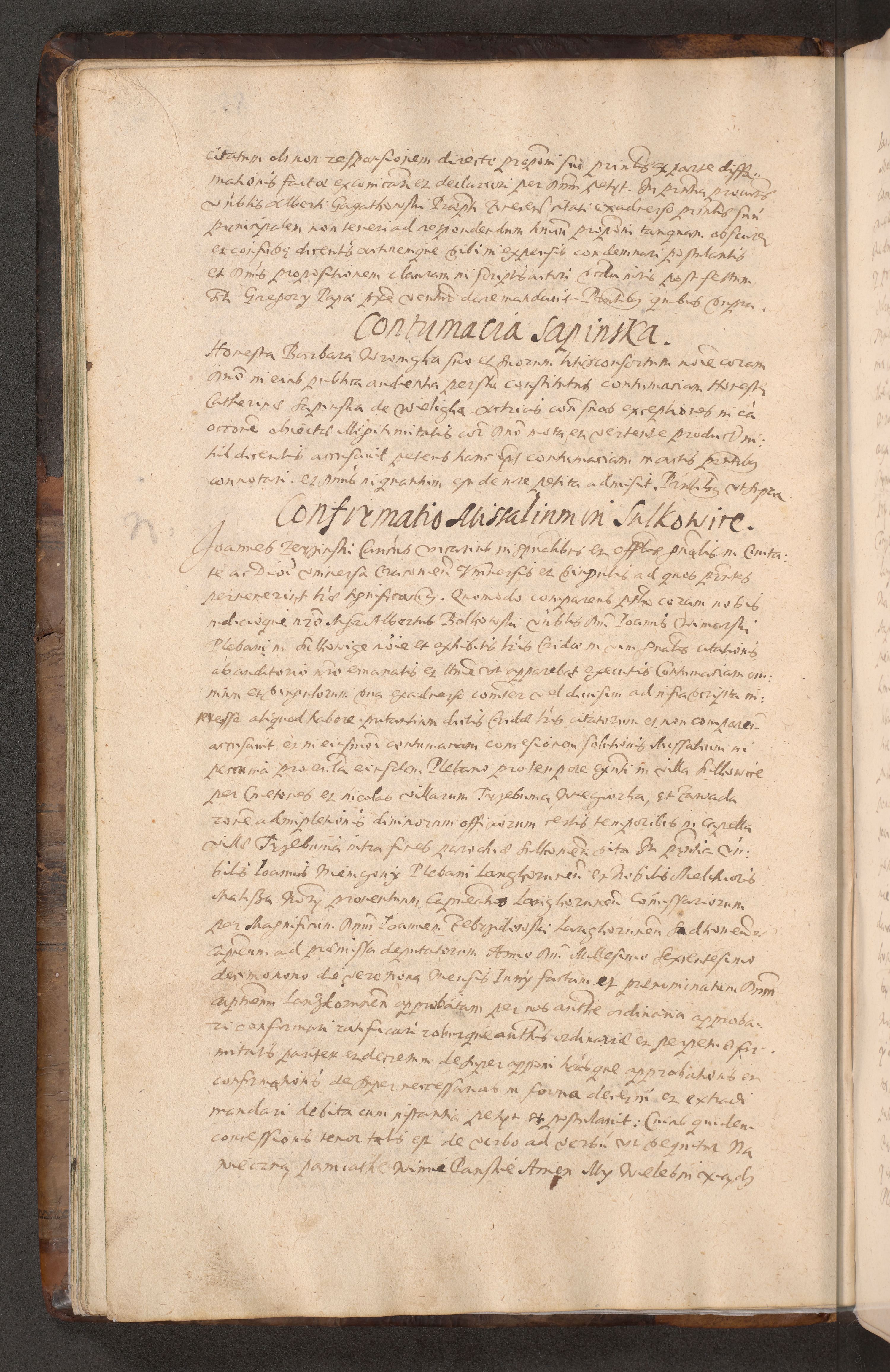 Acta actorum causarum obligationum institutionum decretorum constitutionum quietationum resignationum cissionum et atiaru obsernationum tam indiciariarum quam extra indiciariarum coram Admodum Reverendo Domino Joanne Zerzynski Canonico Vicario in Spiritualibus et Officiali generali Cracoviensis ad Annum Domini Millesimum Sextentissimum Vigesimum Indictione tertia Pontificatus SSmi D. N. D. Pauli Divina pronidentia Papae V. foeliciter moderni anno ipsins subfelici regimine Diocesis Cracoviensis Illustrissimi ac Reverendissimi D. N. D. Martini Szyszkowski Deigratia Episcopus Cracoviensis Ducis Severiensis in continuantur.