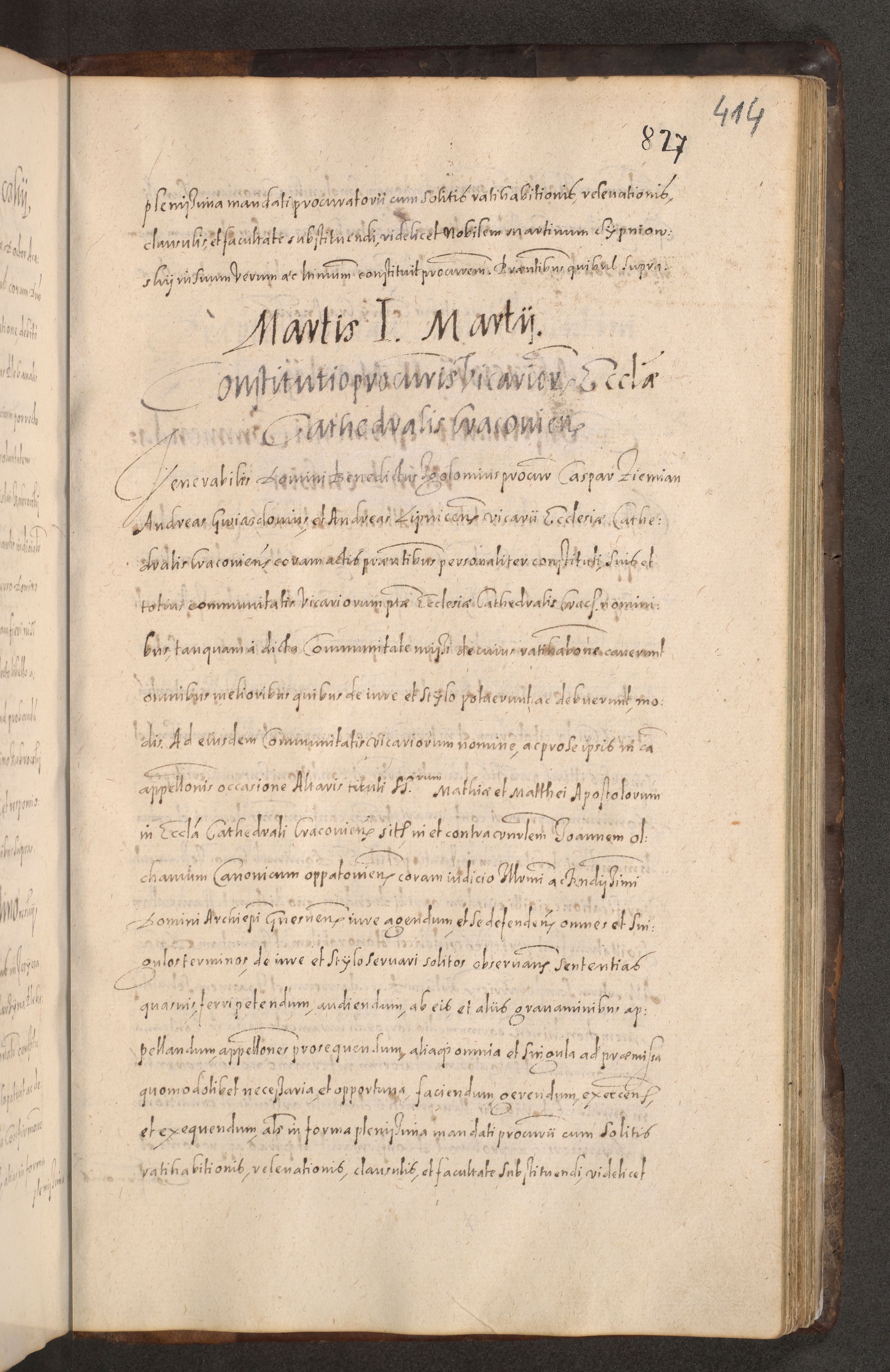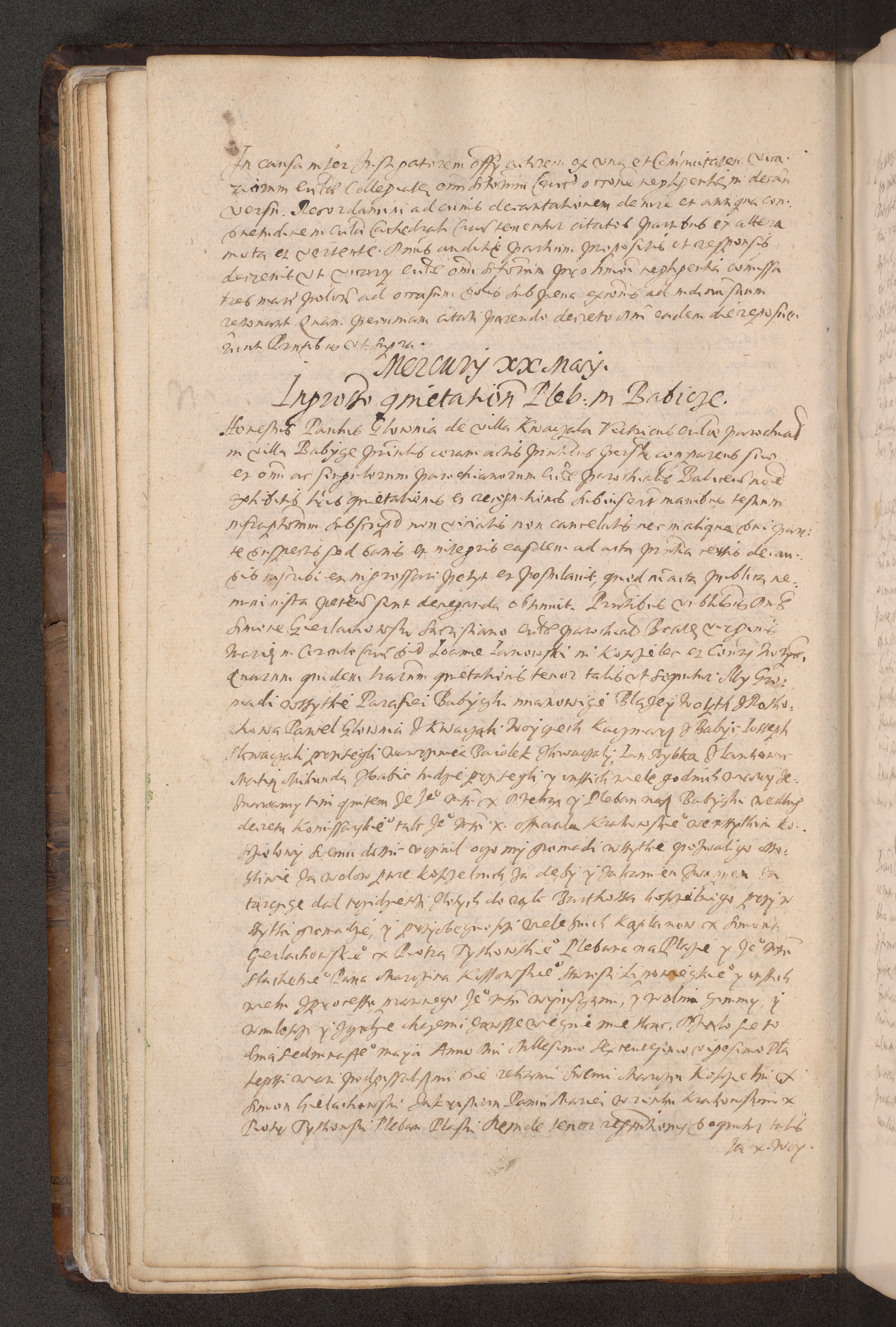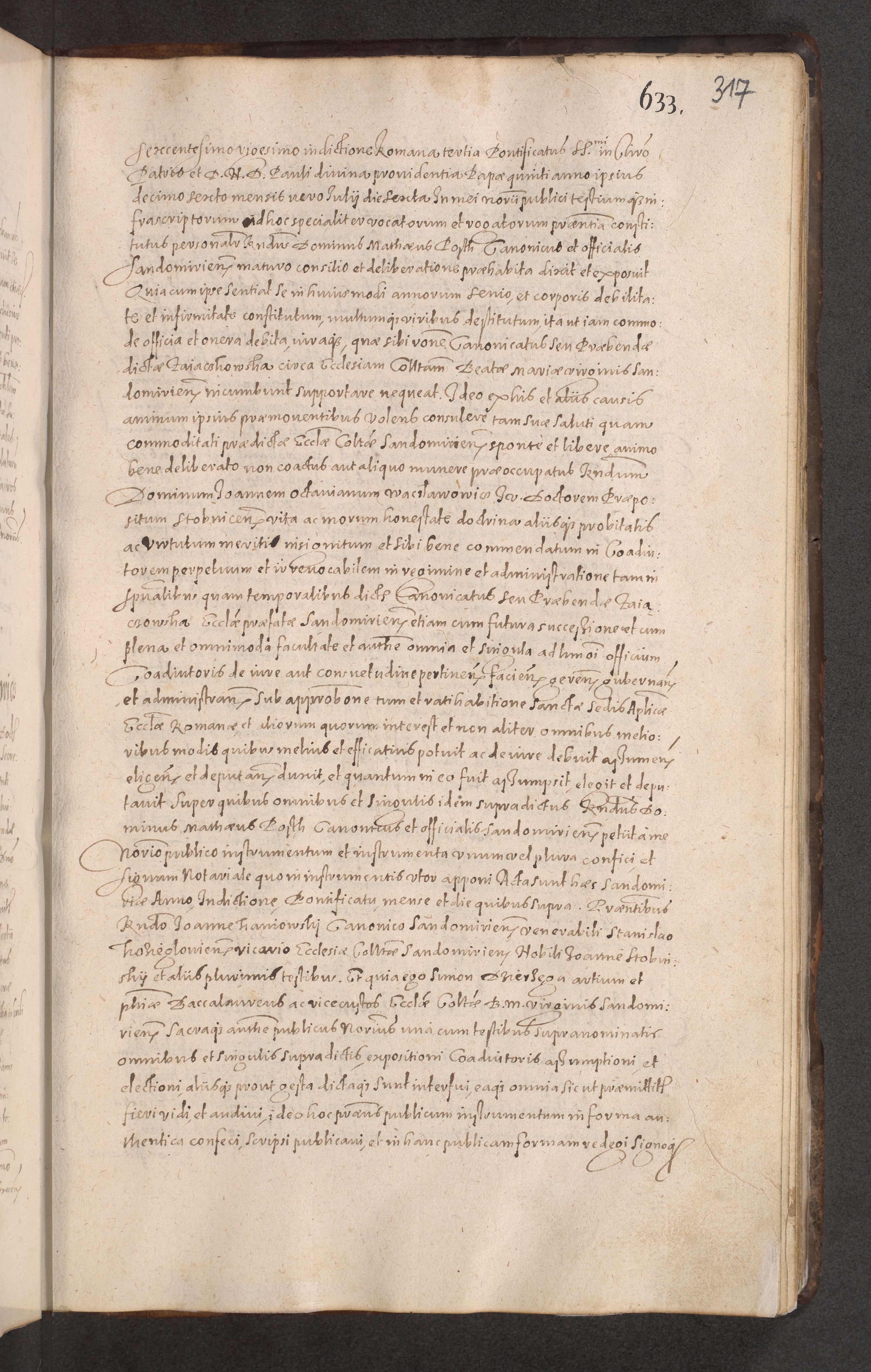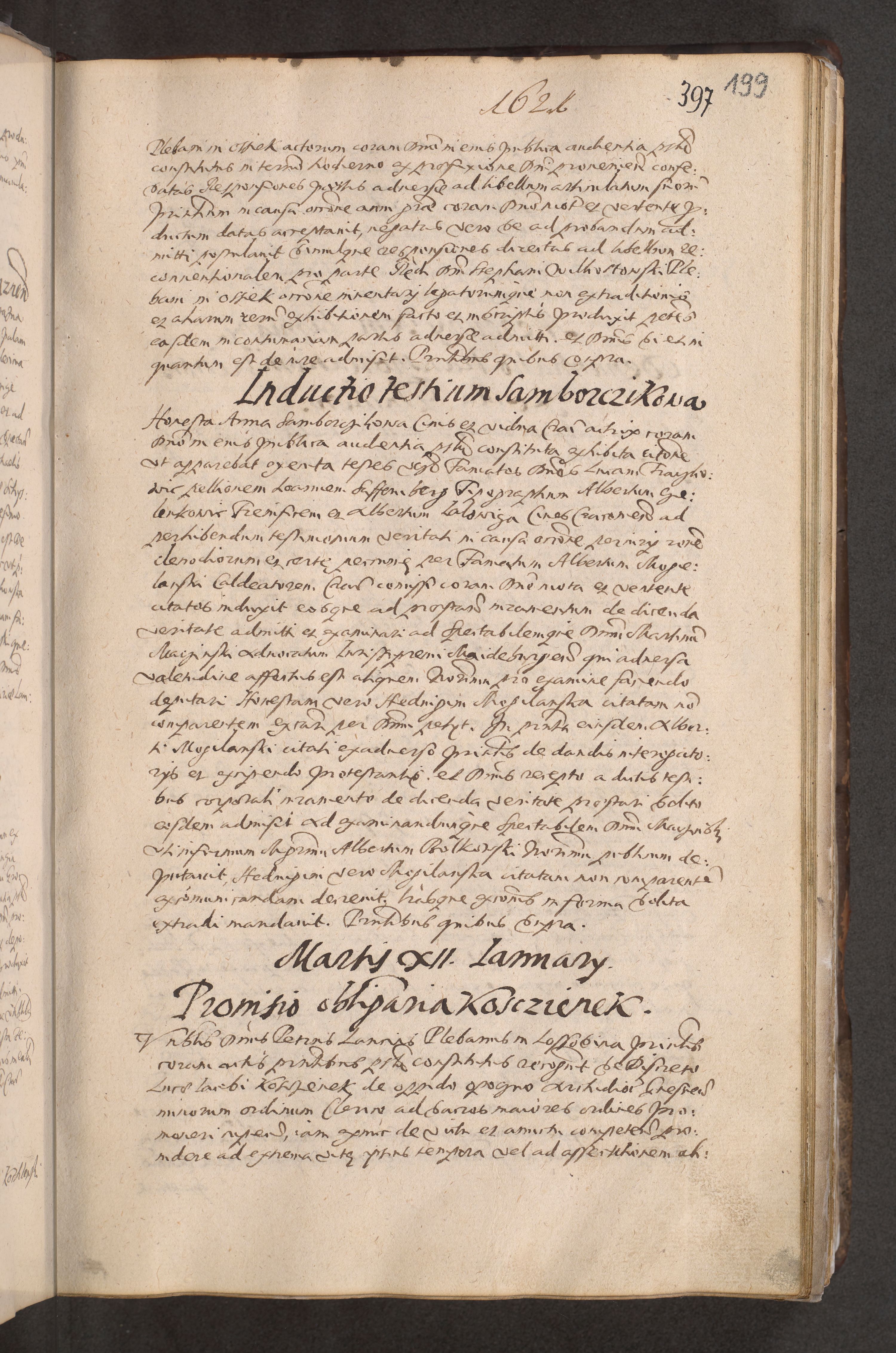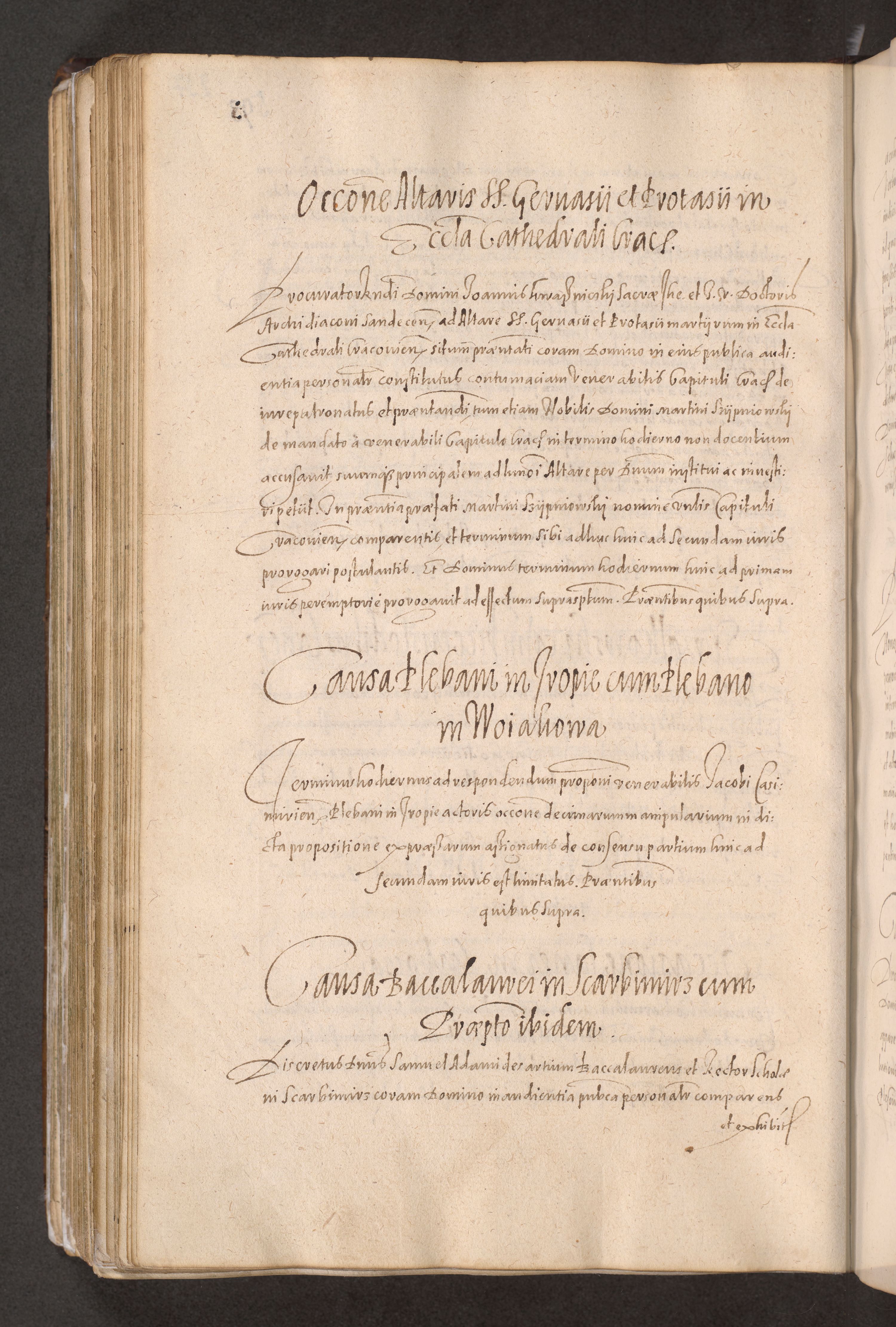 Acta actorum causarum obligationum institutionum decretorum constitutionum quietationum resignationum cissionum et atiaru obsernationum tam indiciariarum quam extra indiciariarum coram Admodum Reverendo Domino Joanne Zerzynski Canonico Vicario in Spiritualibus et Officiali generali Cracoviensis ad Annum Domini Millesimum Sextentissimum Vigesimum Indictione tertia Pontificatus SSmi D. N. D. Pauli Divina pronidentia Papae V. foeliciter moderni anno ipsins subfelici regimine Diocesis Cracoviensis Illustrissimi ac Reverendissimi D. N. D. Martini Szyszkowski Deigratia Episcopus Cracoviensis Ducis Severiensis in continuantur.