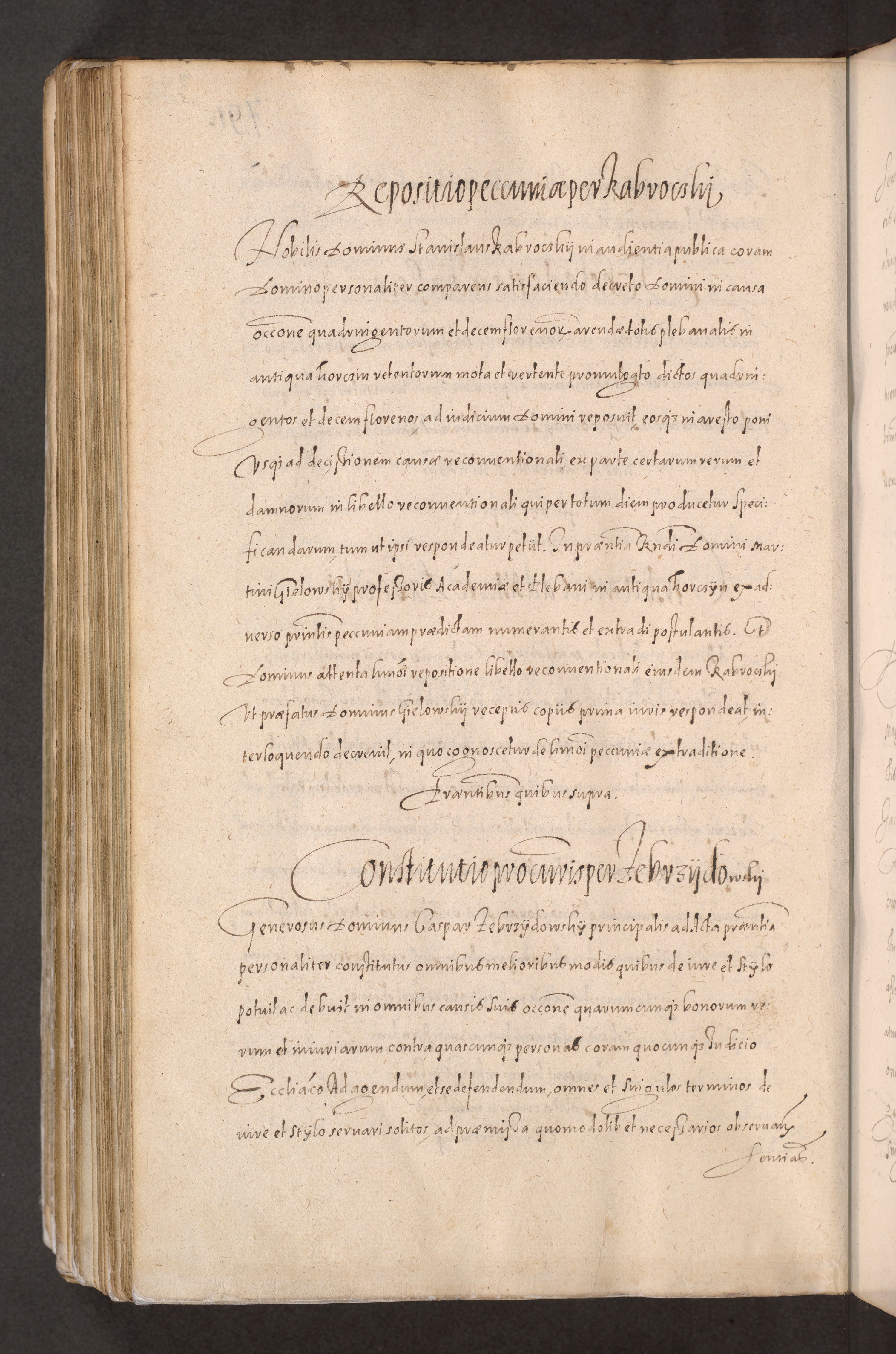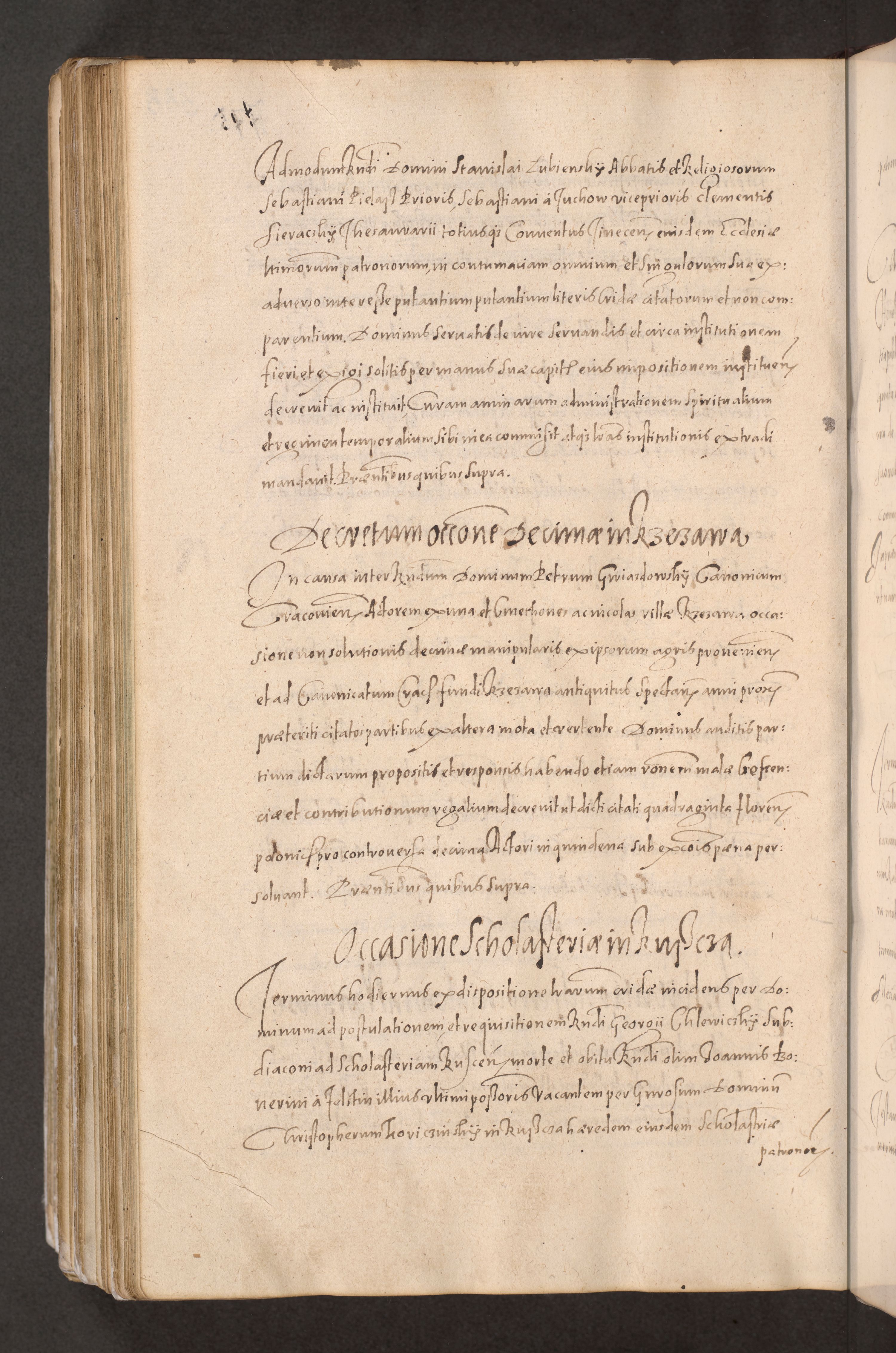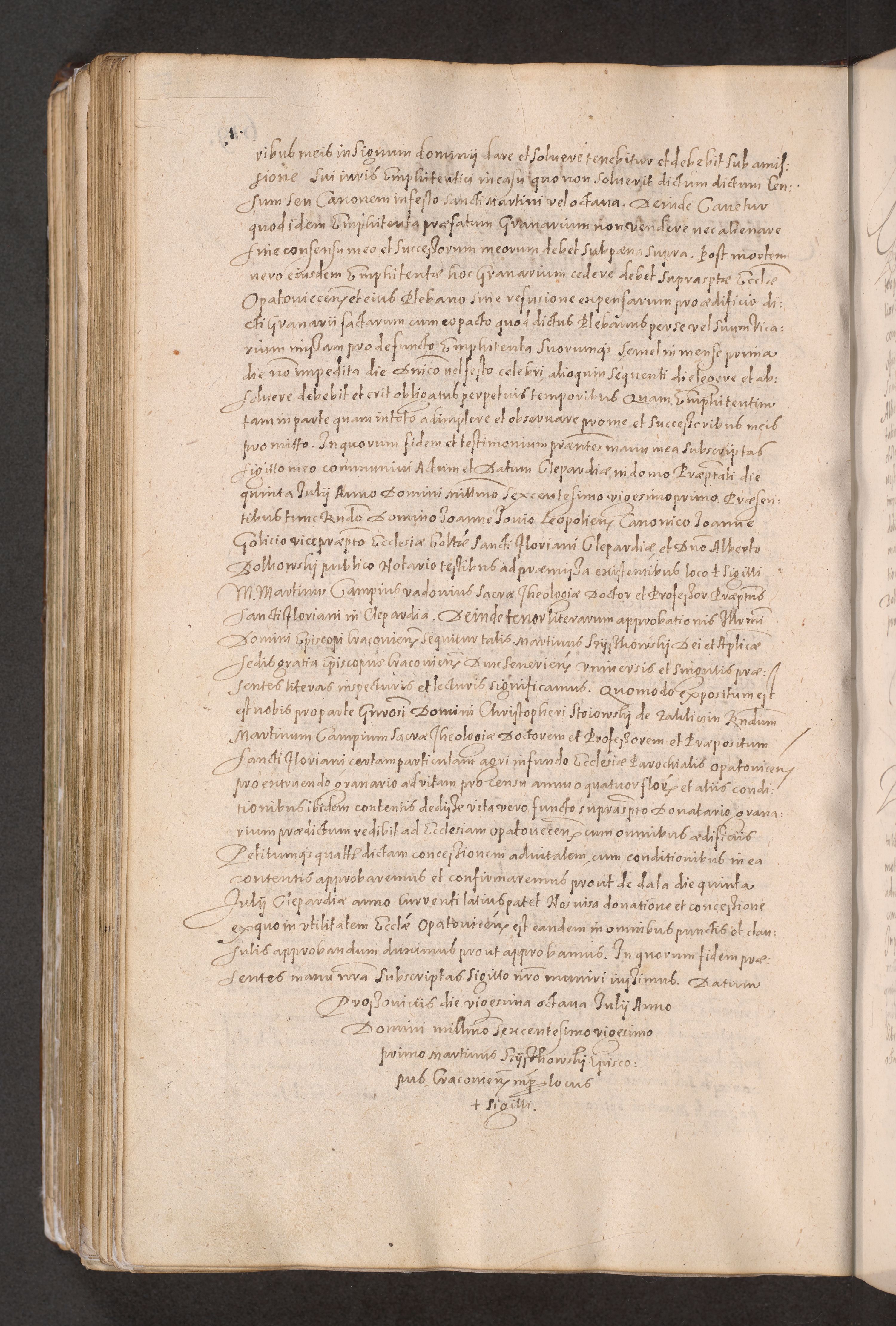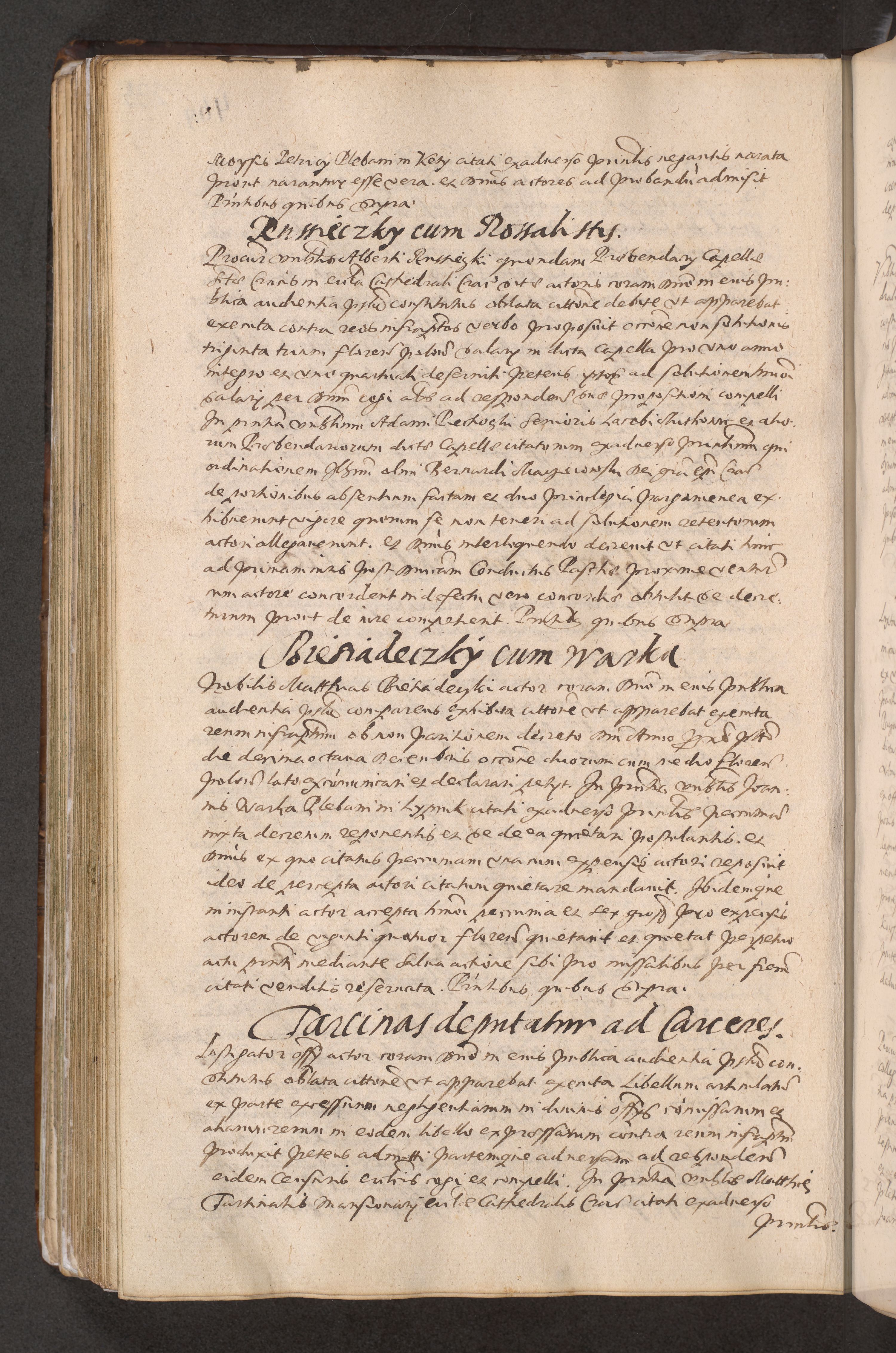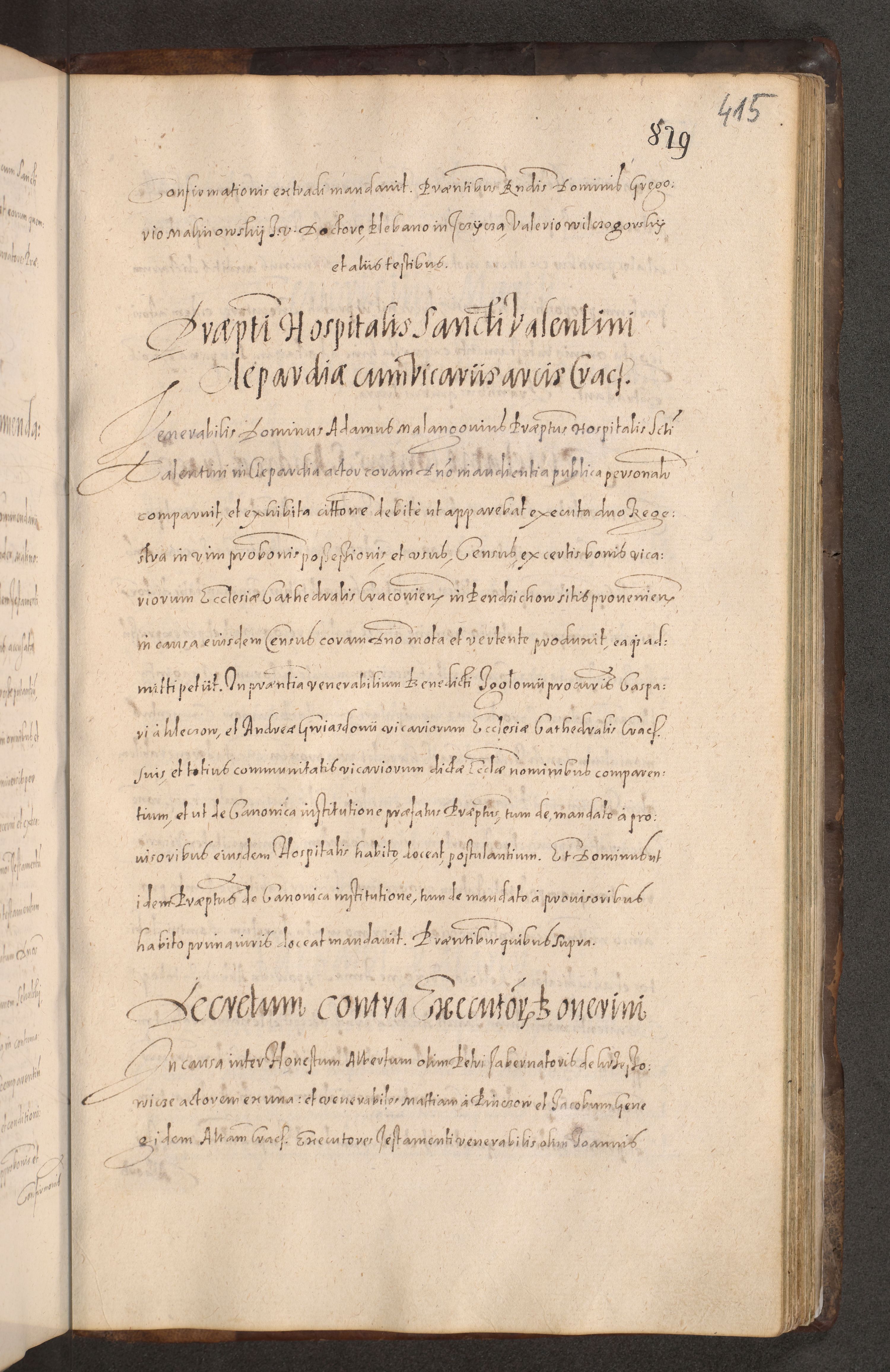 Acta actorum causarum obligationum institutionum decretorum constitutionum quietationum resignationum cissionum et atiaru obsernationum tam indiciariarum quam extra indiciariarum coram Admodum Reverendo Domino Joanne Zerzynski Canonico Vicario in Spiritualibus et Officiali generali Cracoviensis ad Annum Domini Millesimum Sextentissimum Vigesimum Indictione tertia Pontificatus SSmi D. N. D. Pauli Divina pronidentia Papae V. foeliciter moderni anno ipsins subfelici regimine Diocesis Cracoviensis Illustrissimi ac Reverendissimi D. N. D. Martini Szyszkowski Deigratia Episcopus Cracoviensis Ducis Severiensis in continuantur.