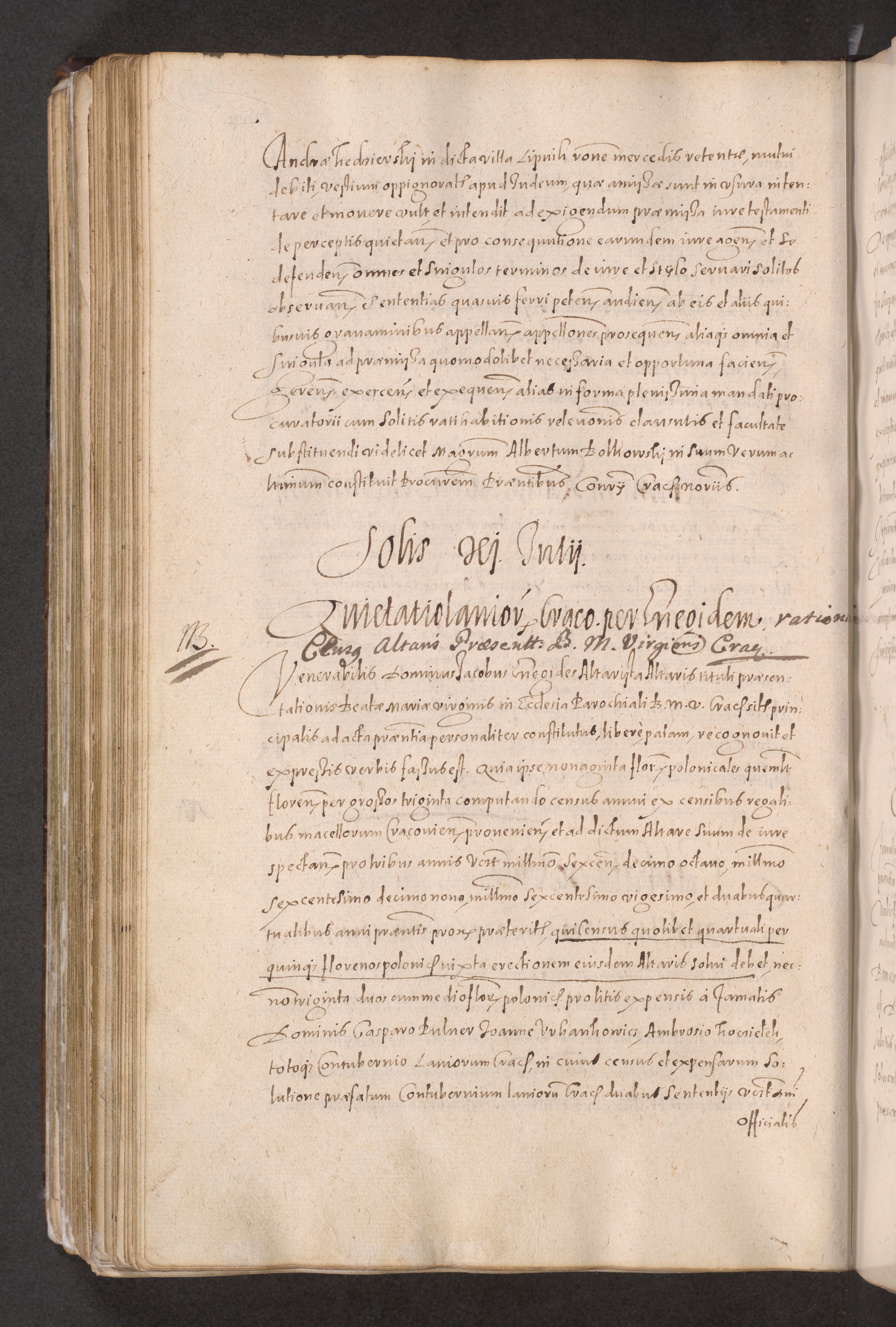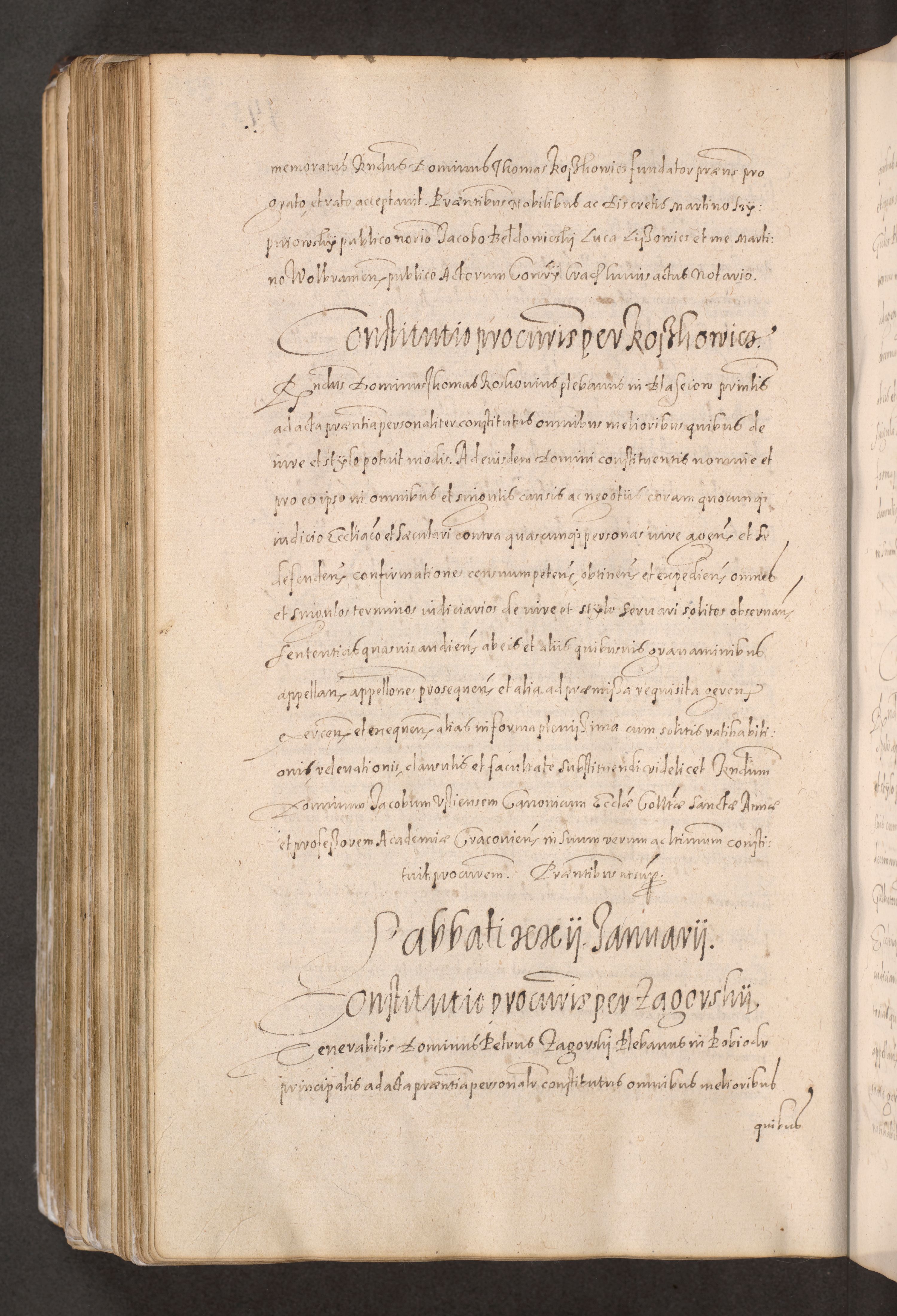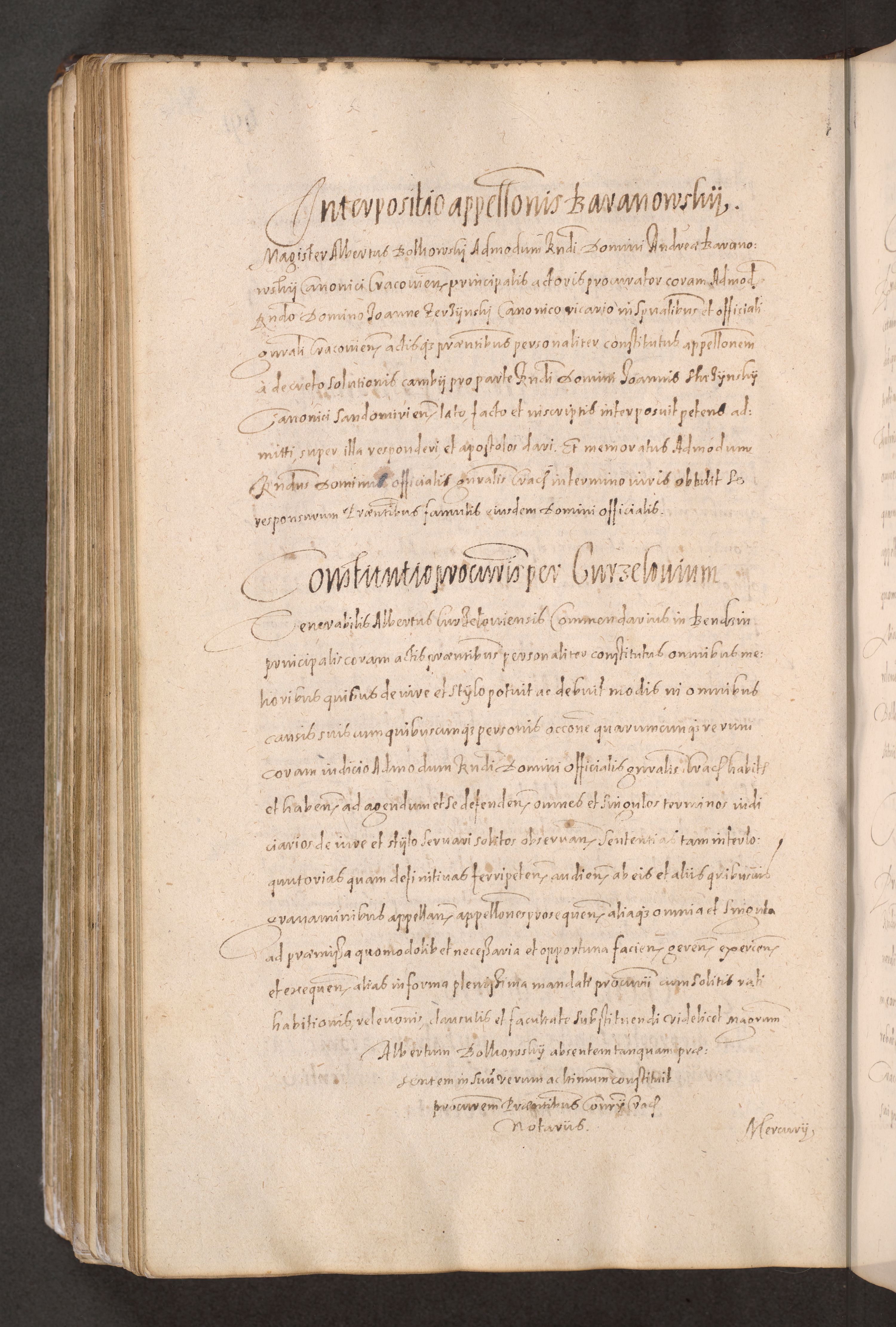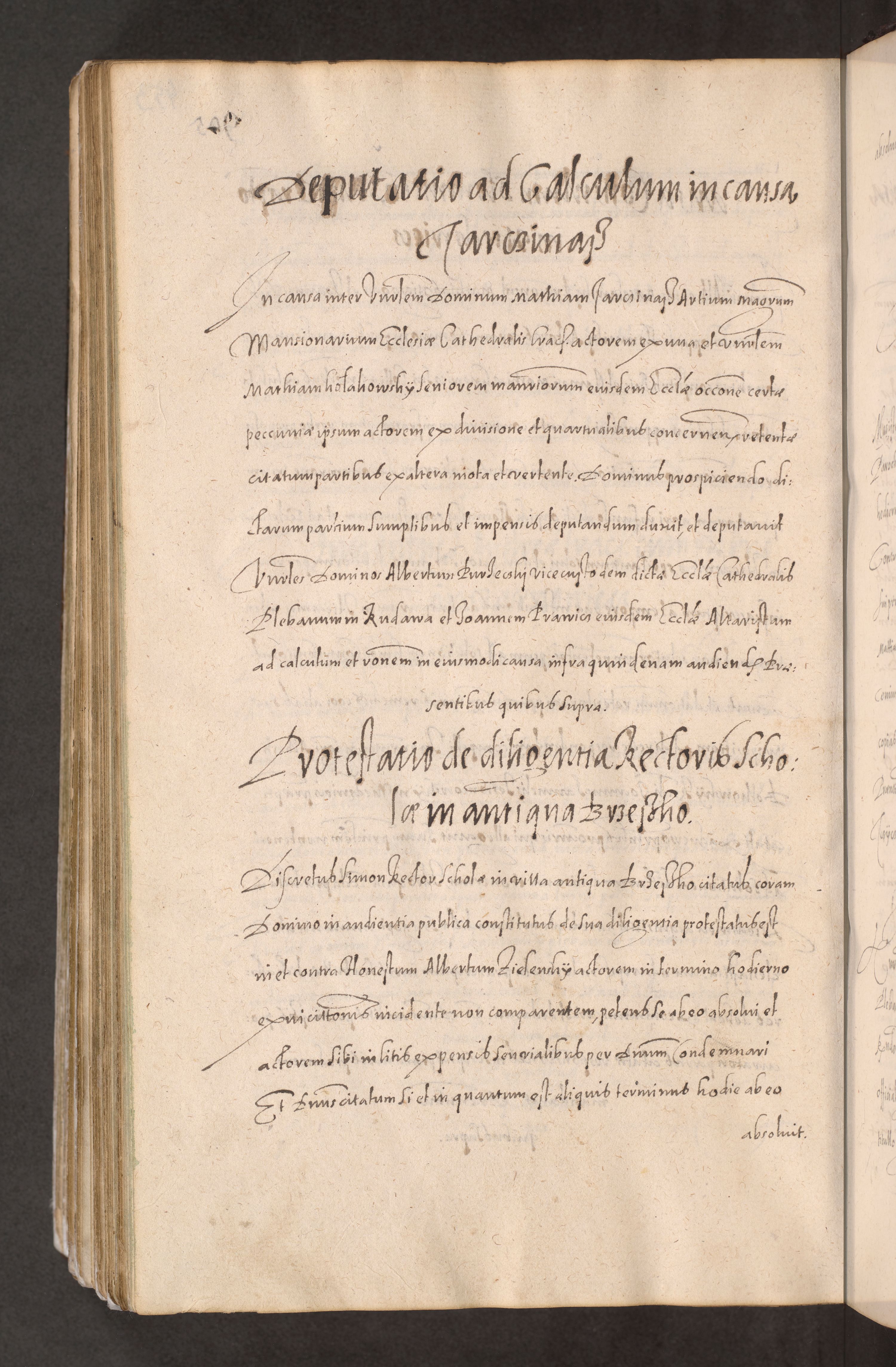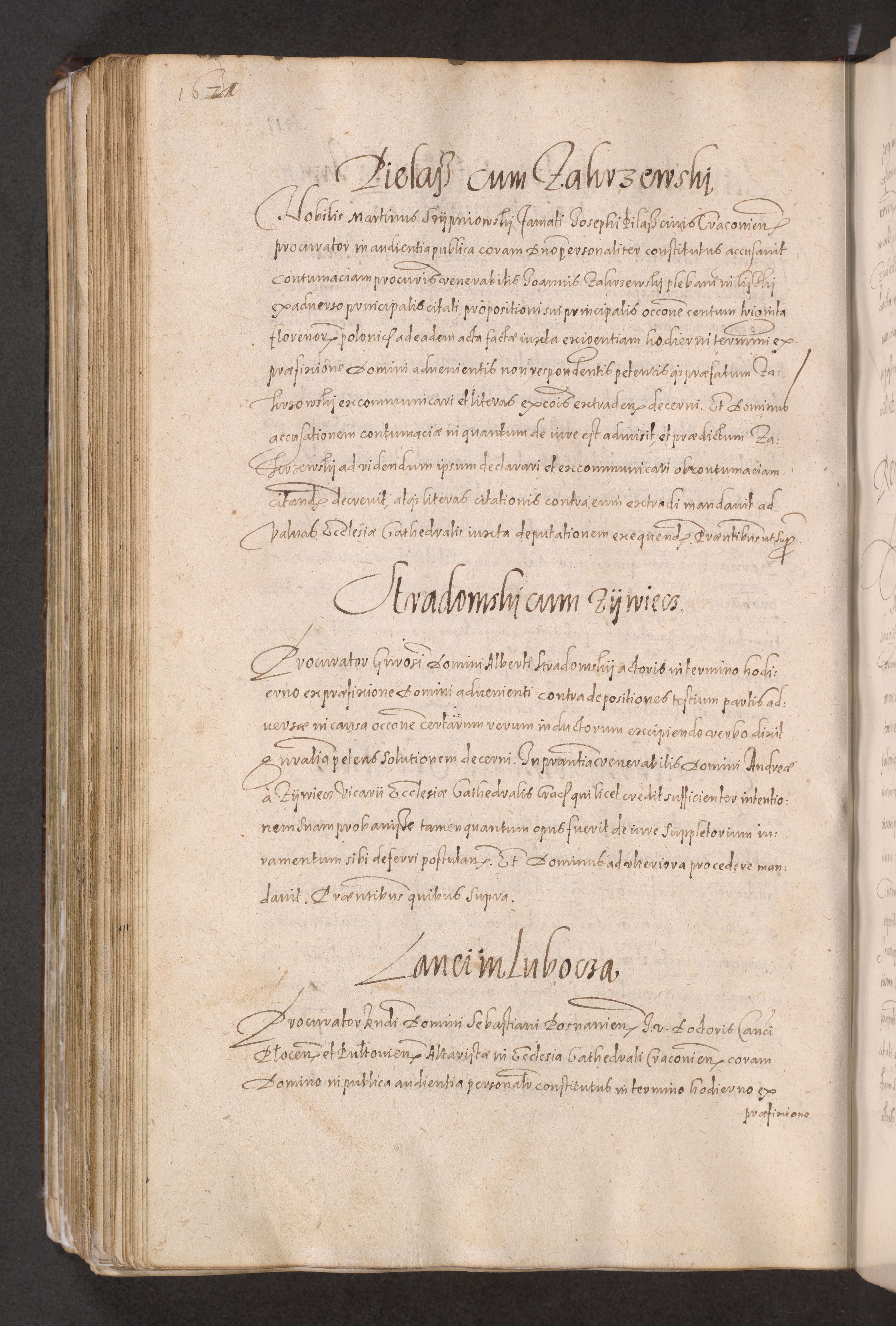 Acta actorum causarum obligationum institutionum decretorum constitutionum quietationum resignationum cissionum et atiaru obsernationum tam indiciariarum quam extra indiciariarum coram Admodum Reverendo Domino Joanne Zerzynski Canonico Vicario in Spiritualibus et Officiali generali Cracoviensis ad Annum Domini Millesimum Sextentissimum Vigesimum Indictione tertia Pontificatus SSmi D. N. D. Pauli Divina pronidentia Papae V. foeliciter moderni anno ipsins subfelici regimine Diocesis Cracoviensis Illustrissimi ac Reverendissimi D. N. D. Martini Szyszkowski Deigratia Episcopus Cracoviensis Ducis Severiensis in continuantur.