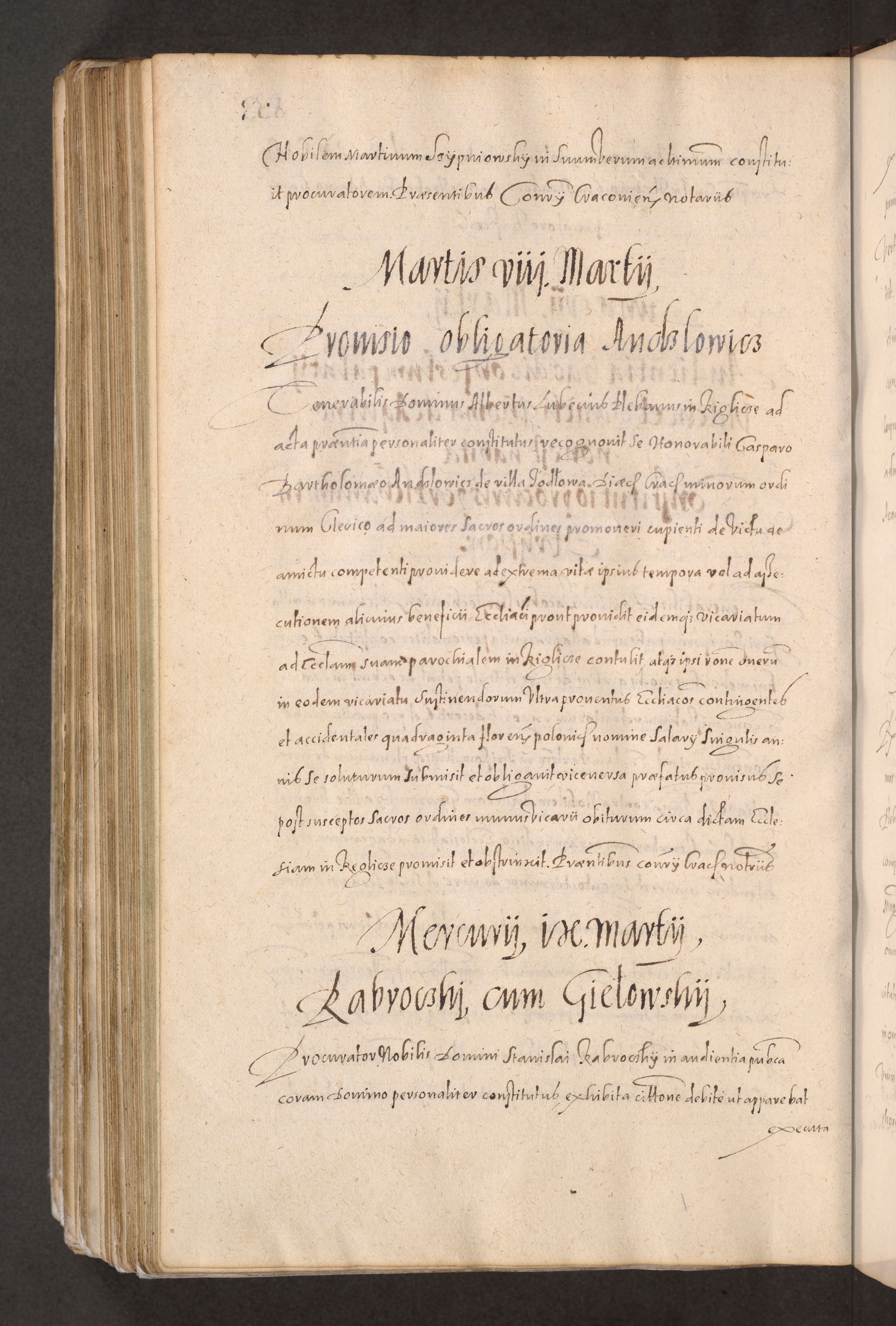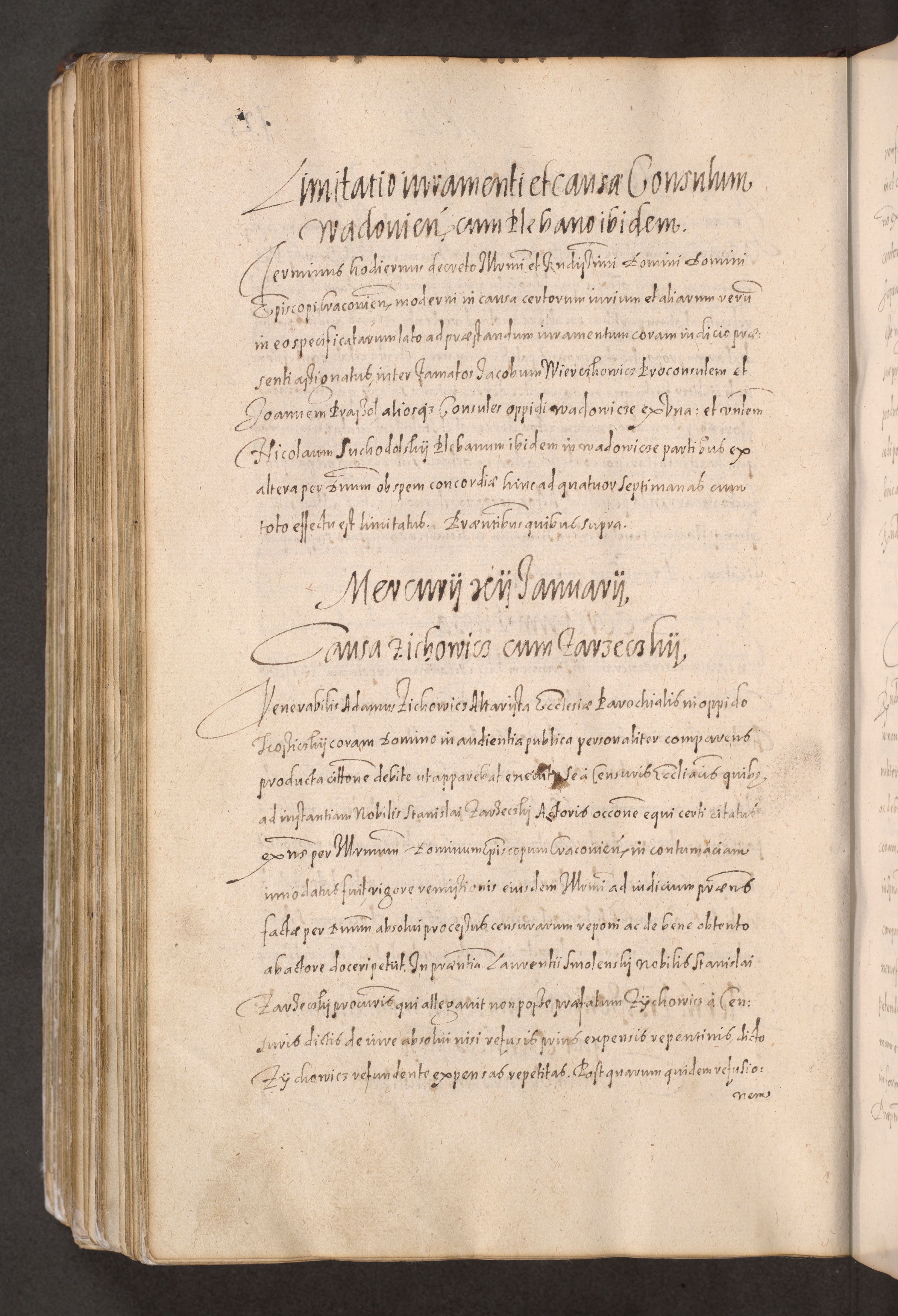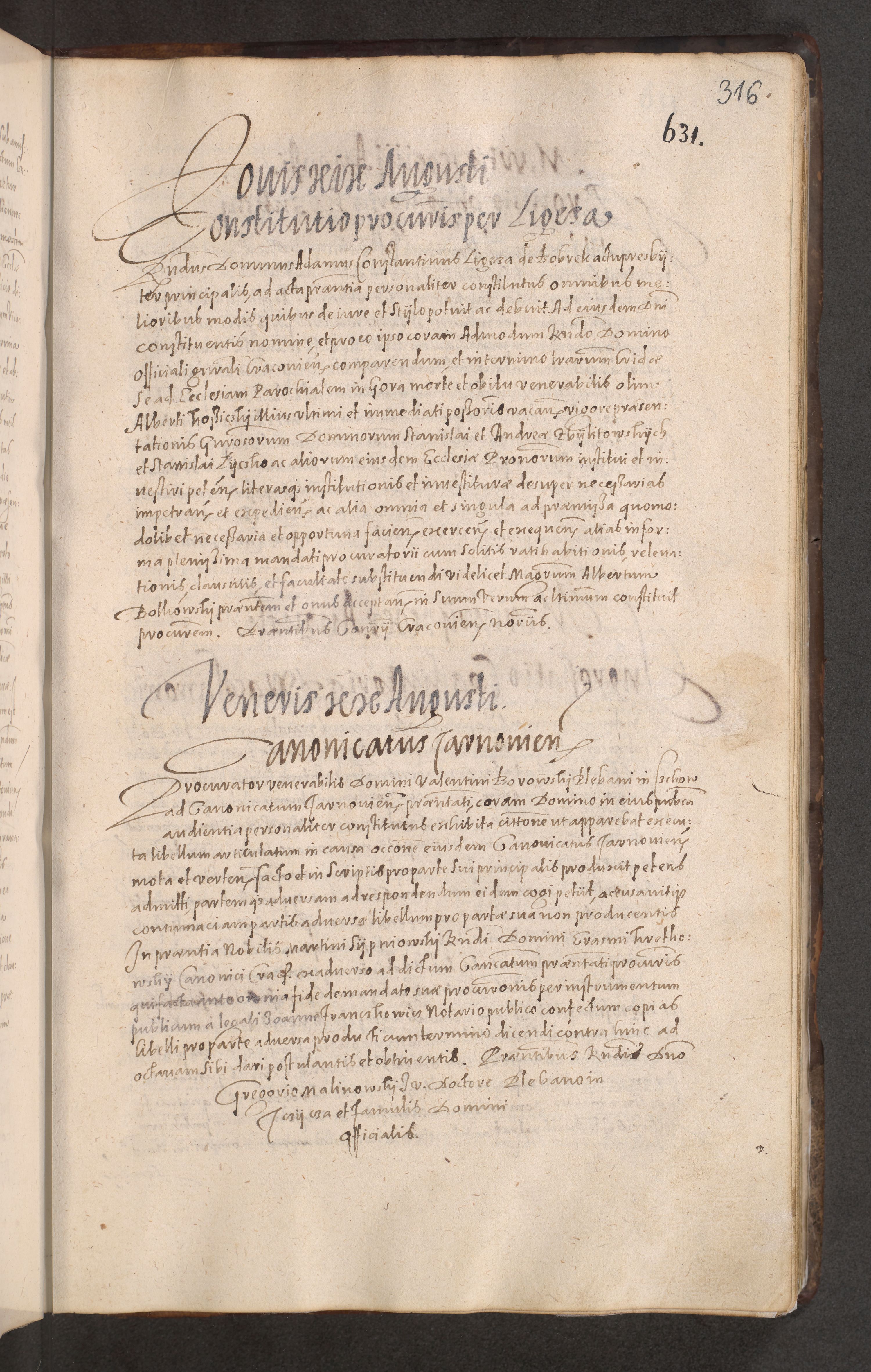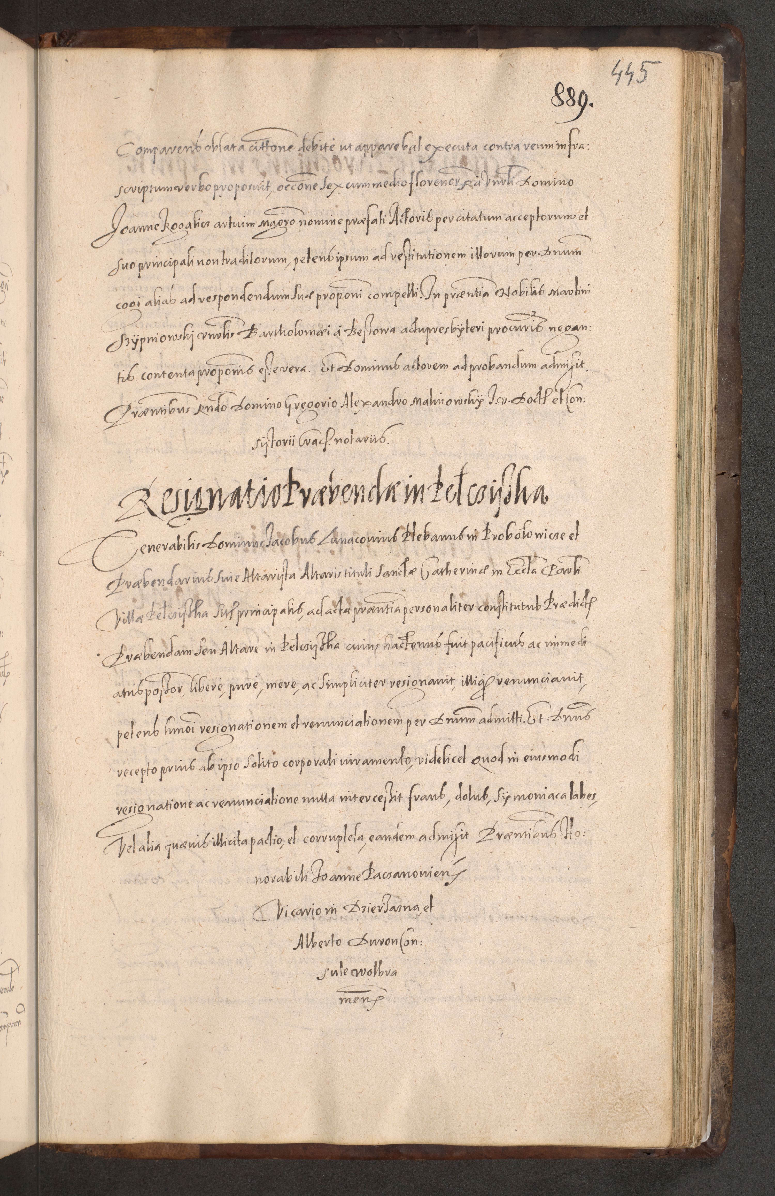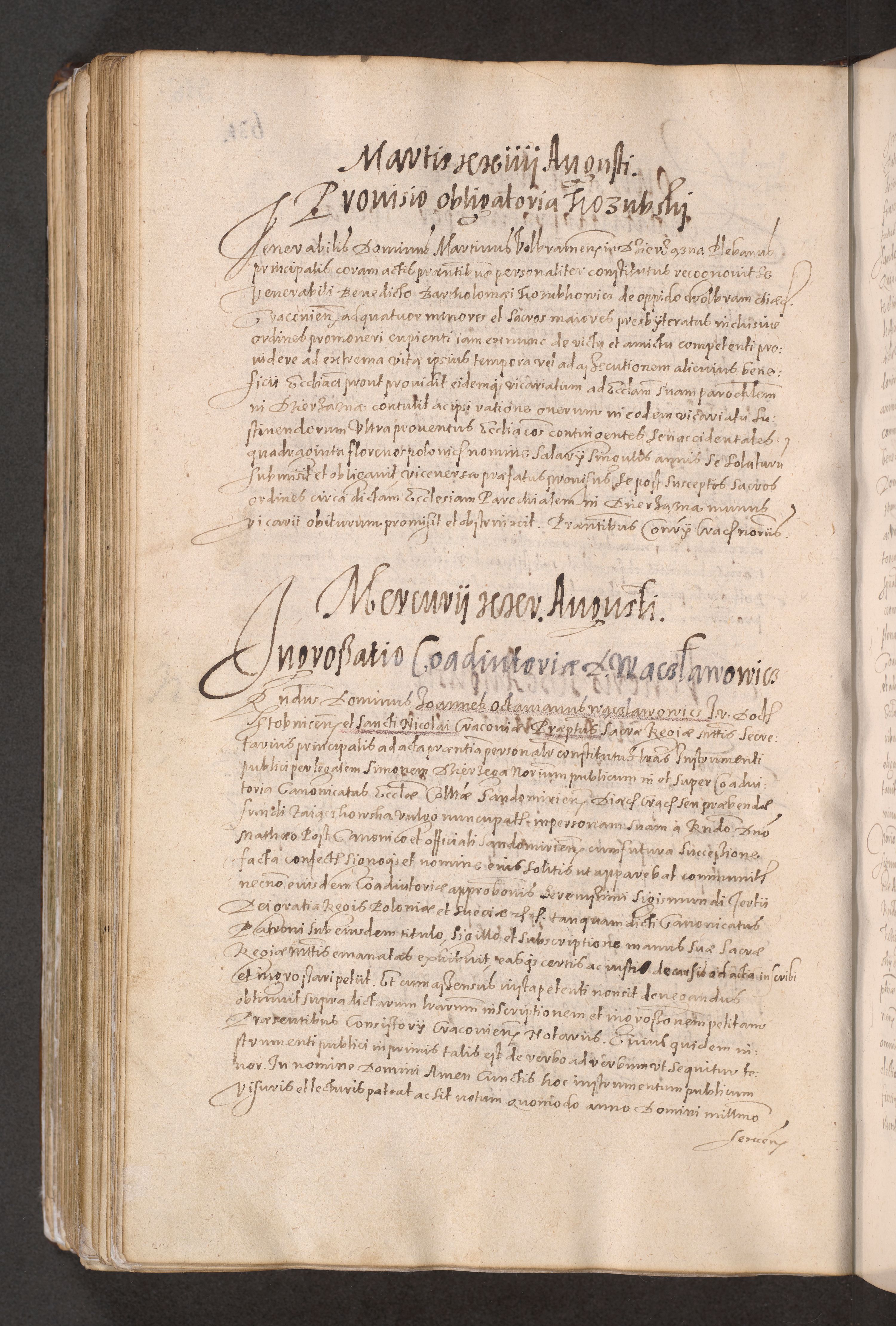 Acta actorum causarum obligationum institutionum decretorum constitutionum quietationum resignationum cissionum et atiaru obsernationum tam indiciariarum quam extra indiciariarum coram Admodum Reverendo Domino Joanne Zerzynski Canonico Vicario in Spiritualibus et Officiali generali Cracoviensis ad Annum Domini Millesimum Sextentissimum Vigesimum Indictione tertia Pontificatus SSmi D. N. D. Pauli Divina pronidentia Papae V. foeliciter moderni anno ipsins subfelici regimine Diocesis Cracoviensis Illustrissimi ac Reverendissimi D. N. D. Martini Szyszkowski Deigratia Episcopus Cracoviensis Ducis Severiensis in continuantur.