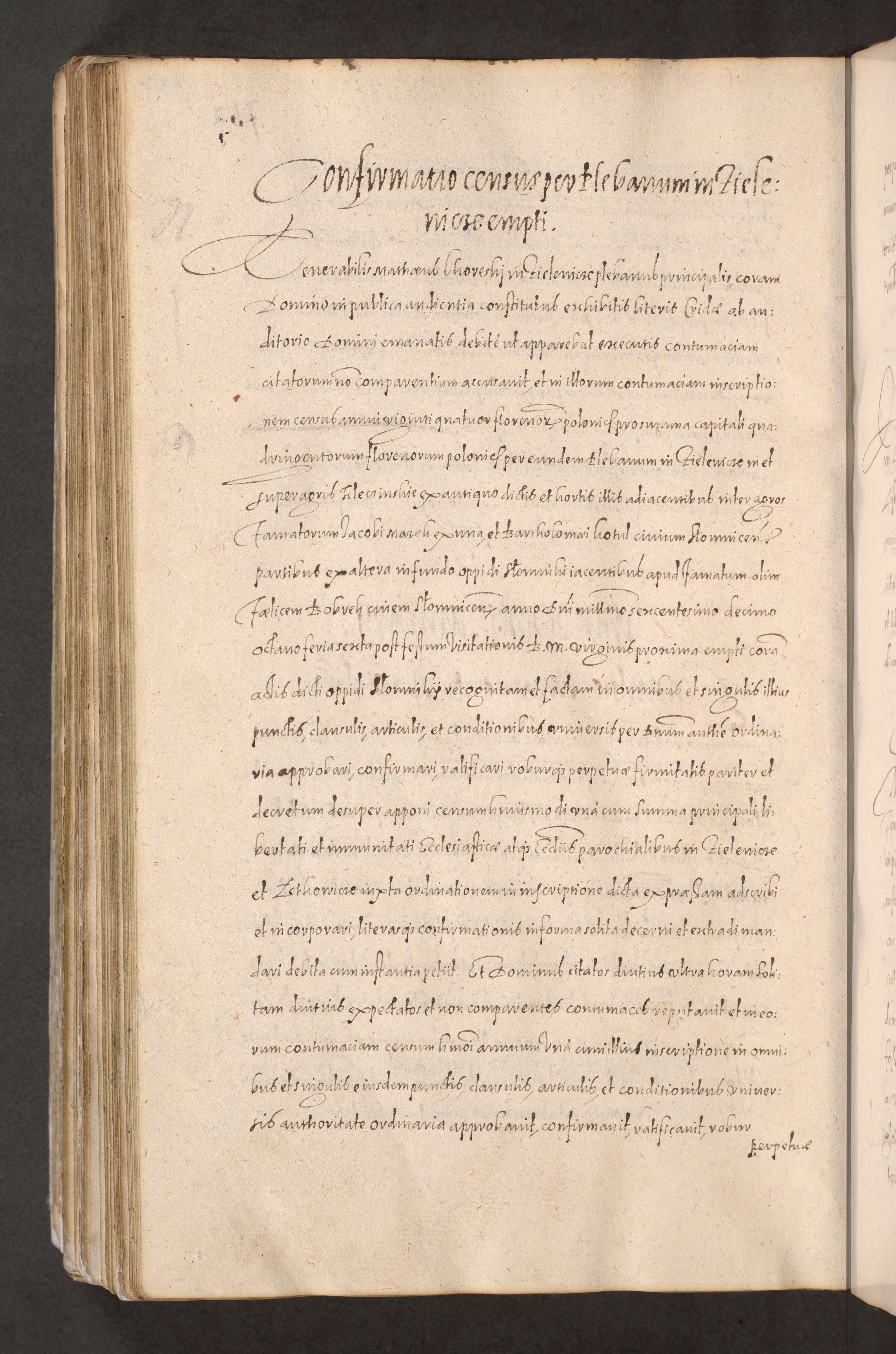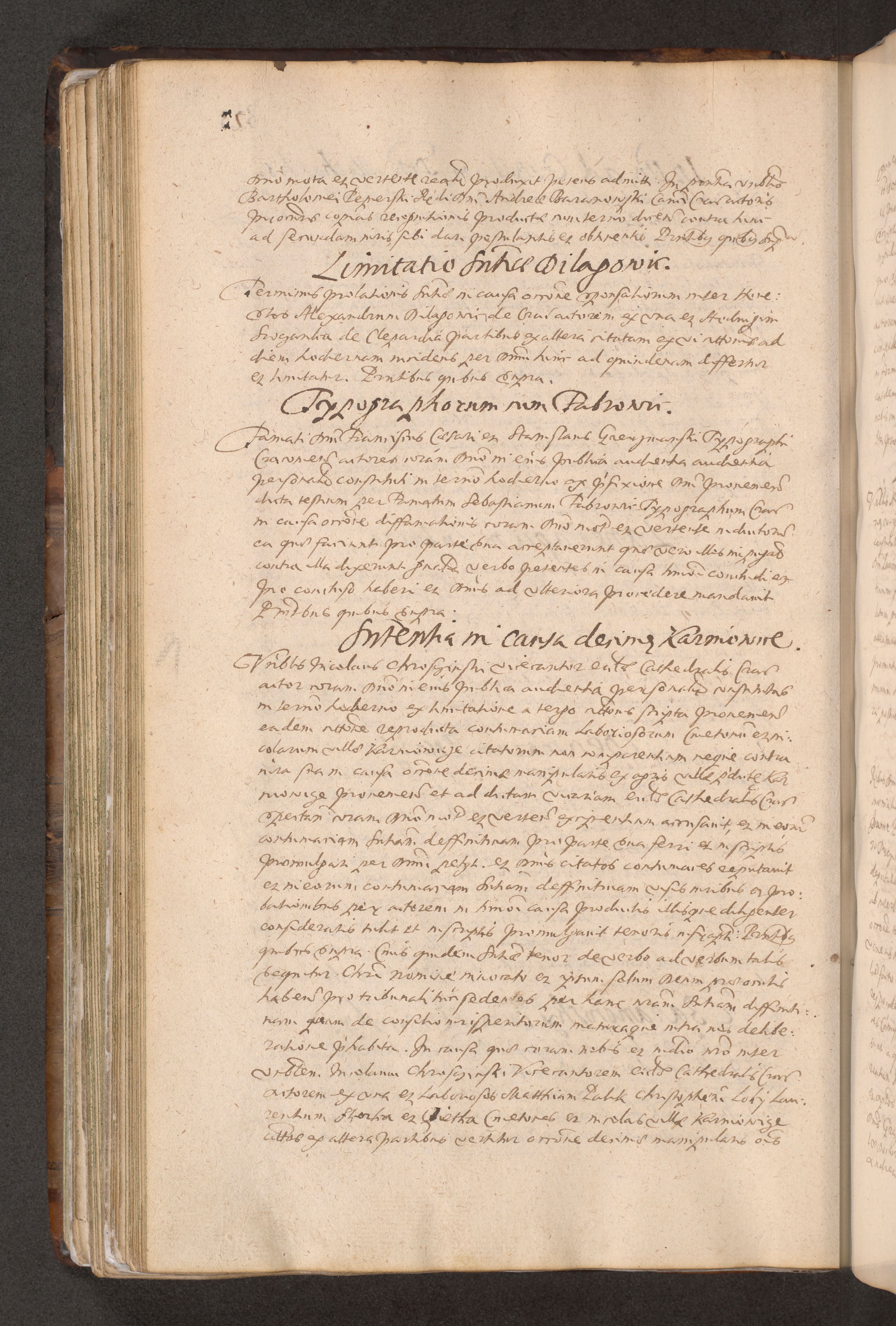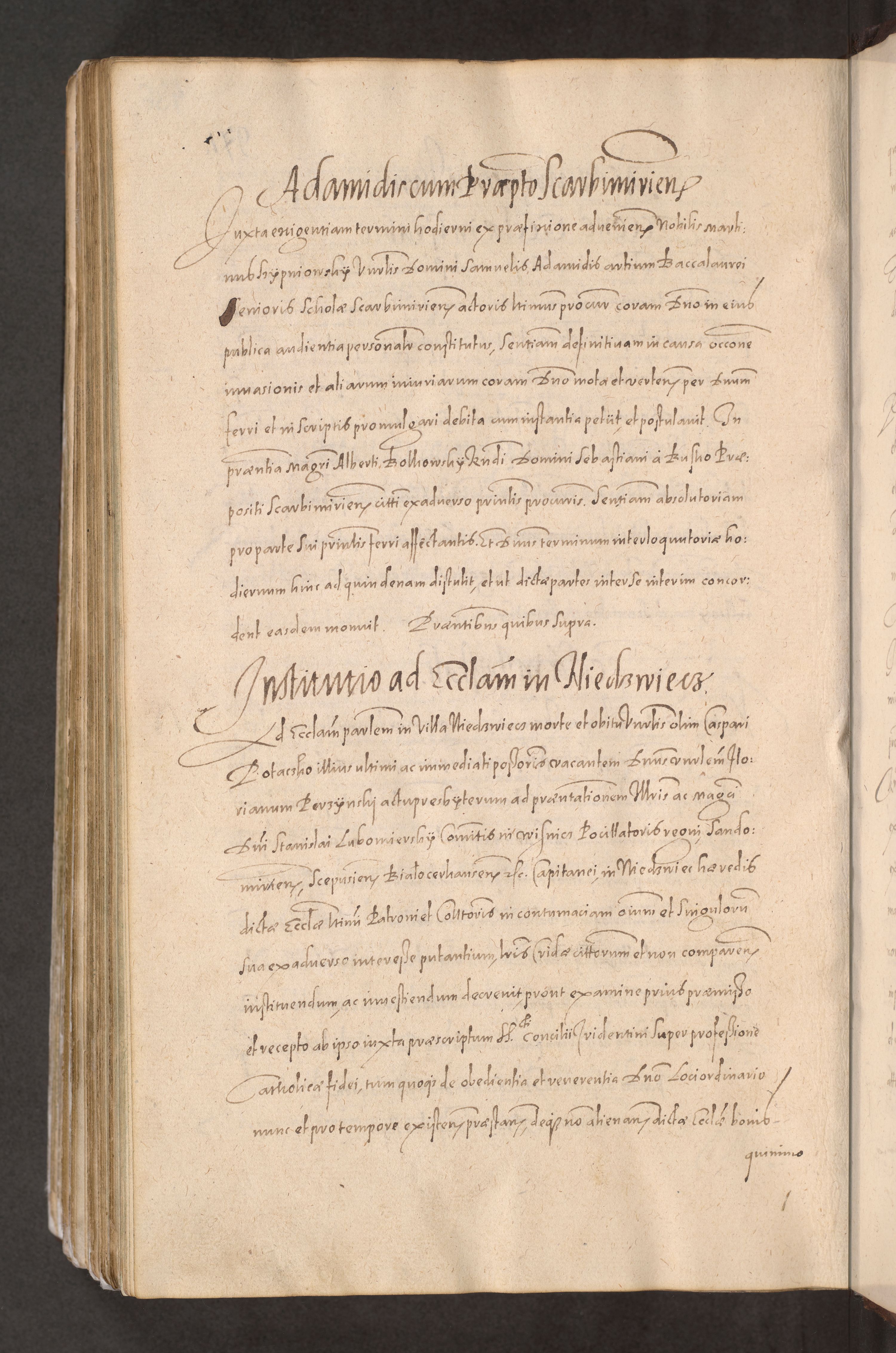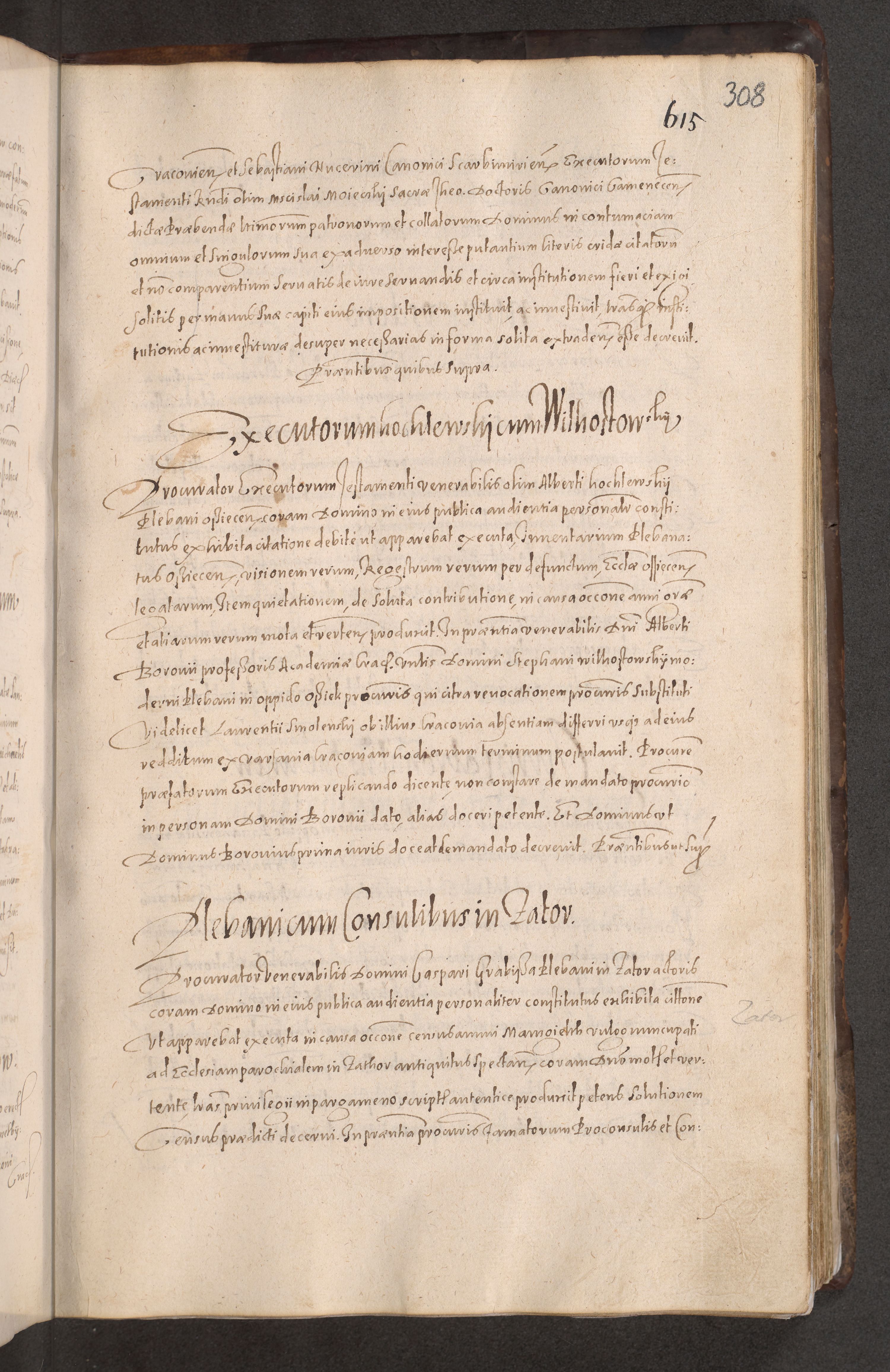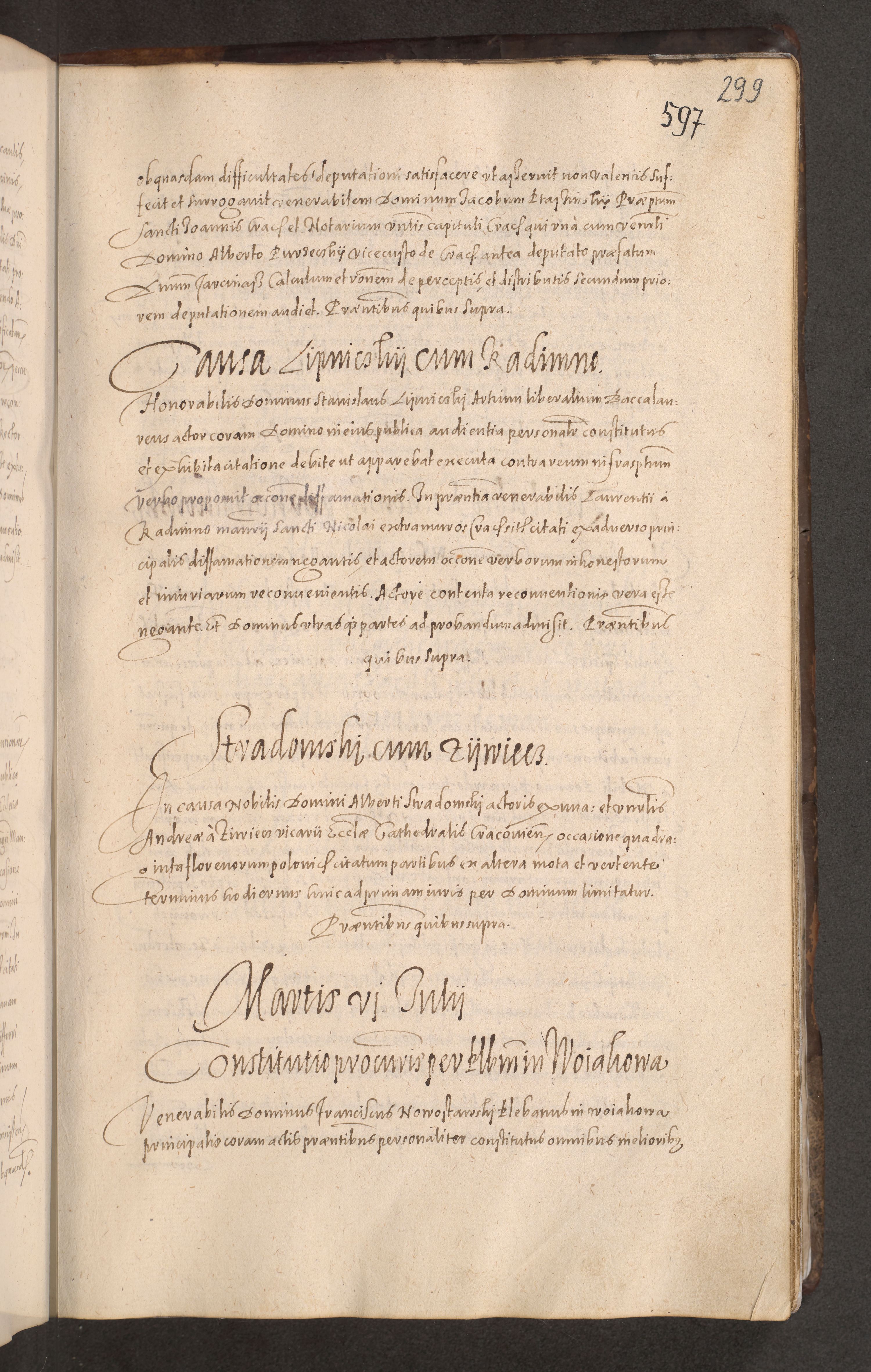 Acta actorum causarum obligationum institutionum decretorum constitutionum quietationum resignationum cissionum et atiaru obsernationum tam indiciariarum quam extra indiciariarum coram Admodum Reverendo Domino Joanne Zerzynski Canonico Vicario in Spiritualibus et Officiali generali Cracoviensis ad Annum Domini Millesimum Sextentissimum Vigesimum Indictione tertia Pontificatus SSmi D. N. D. Pauli Divina pronidentia Papae V. foeliciter moderni anno ipsins subfelici regimine Diocesis Cracoviensis Illustrissimi ac Reverendissimi D. N. D. Martini Szyszkowski Deigratia Episcopus Cracoviensis Ducis Severiensis in continuantur.