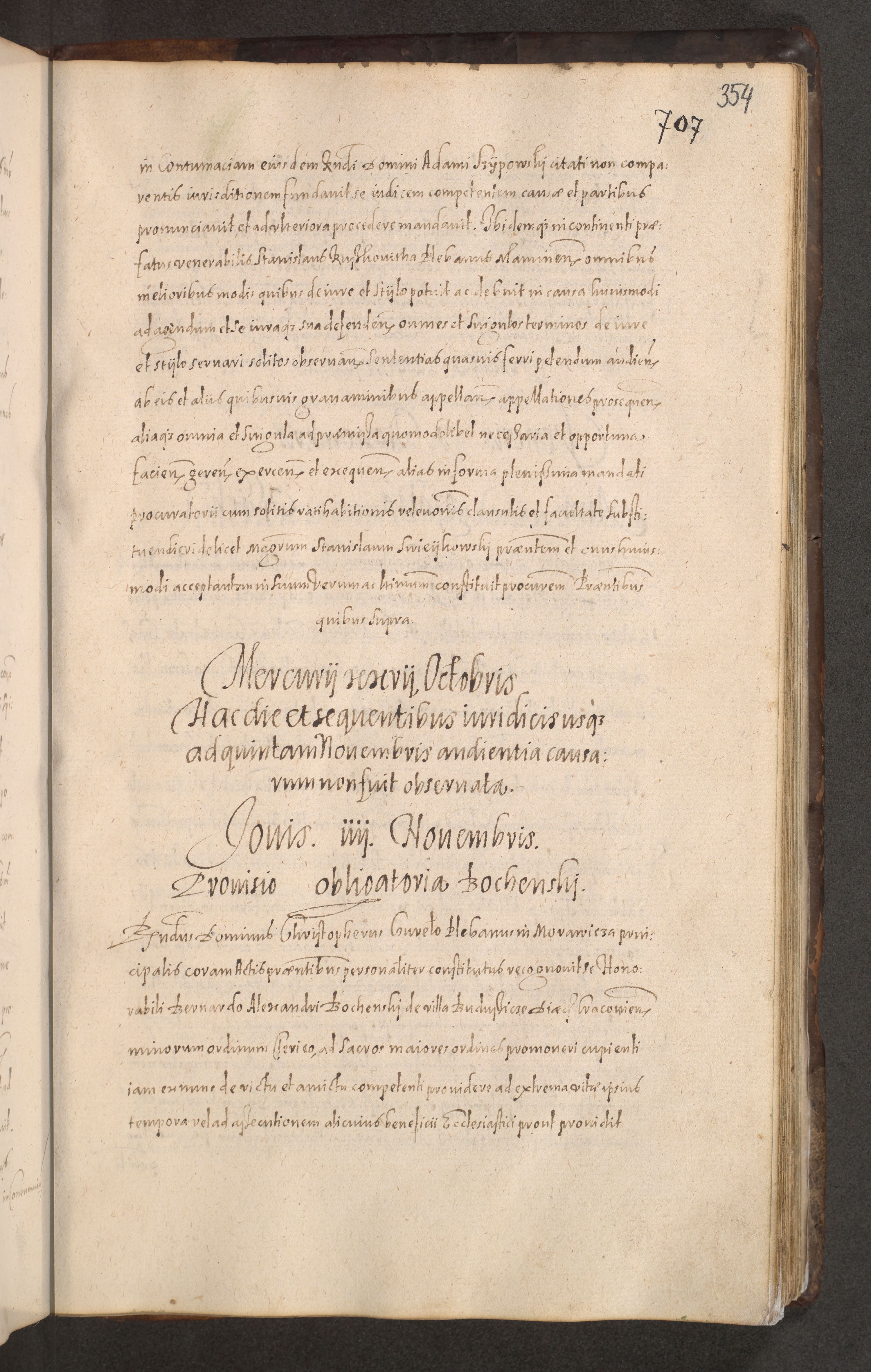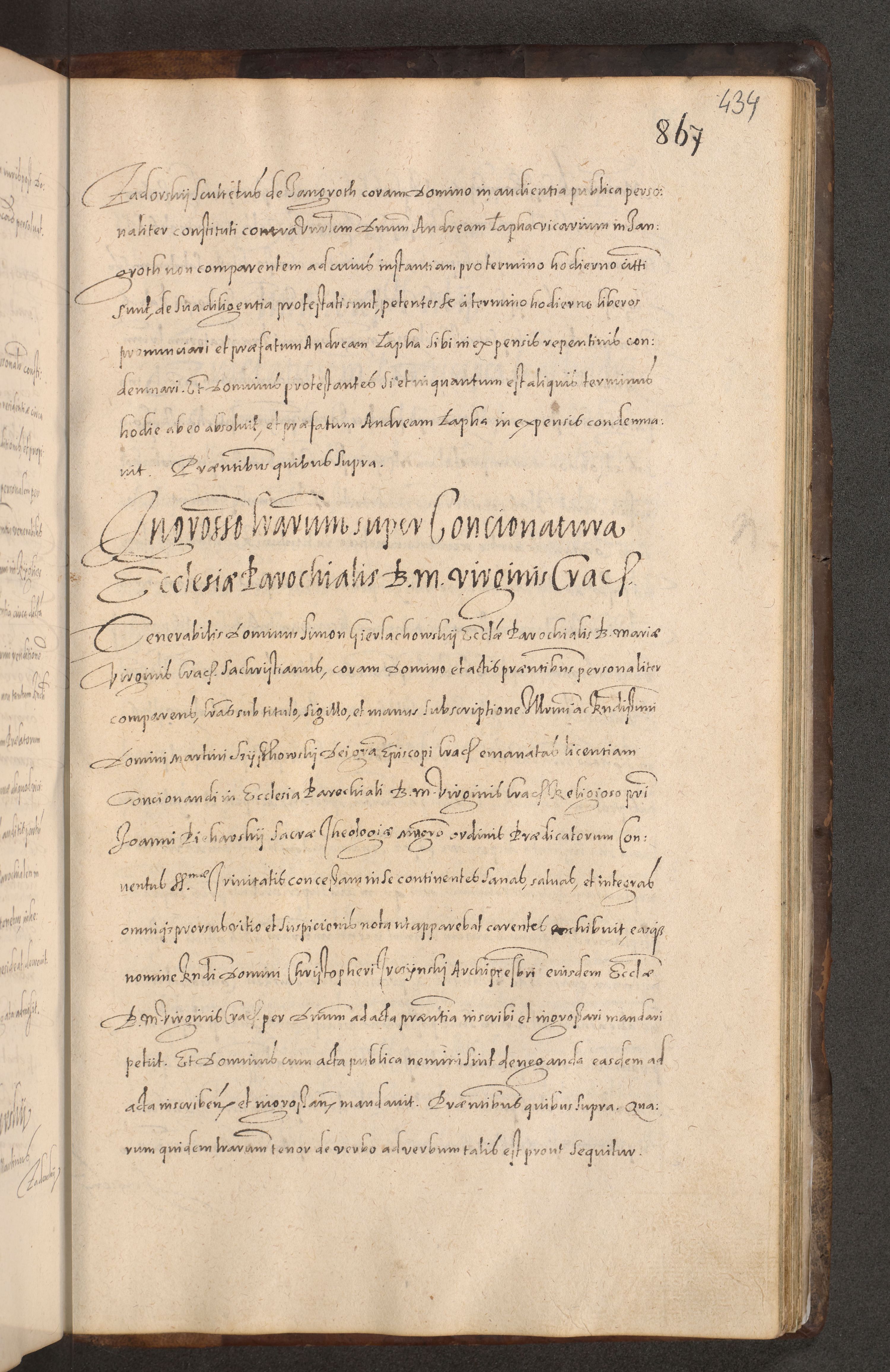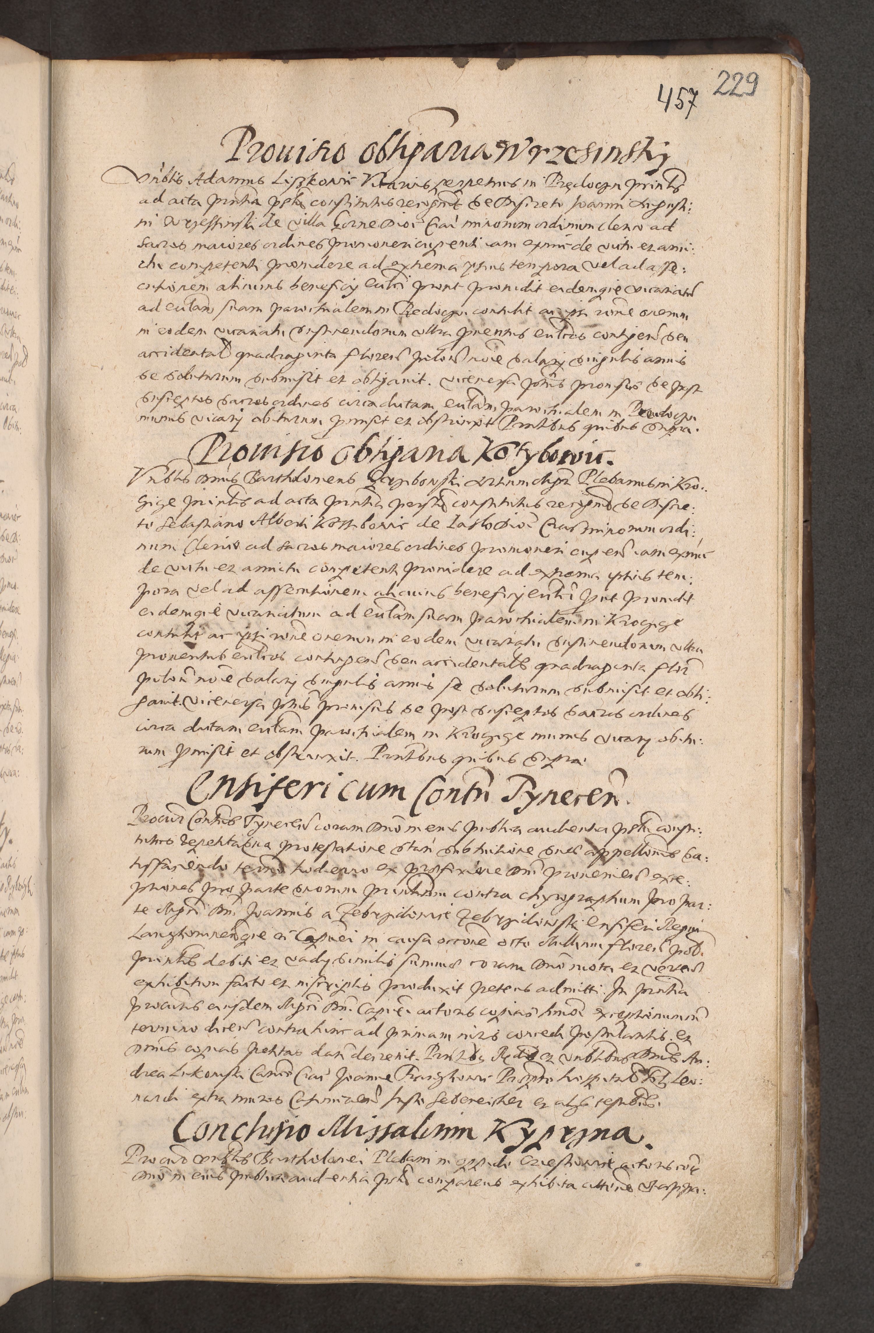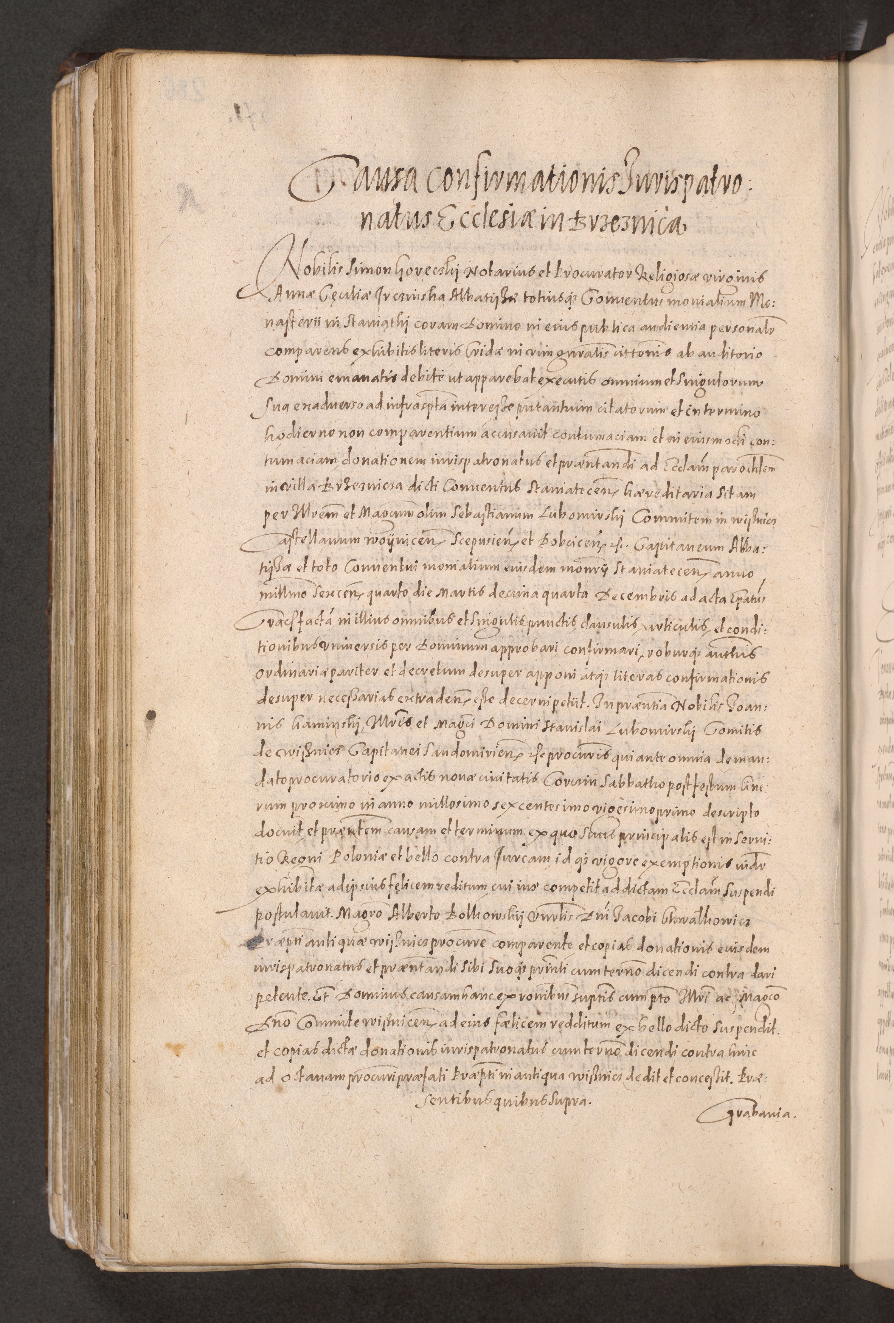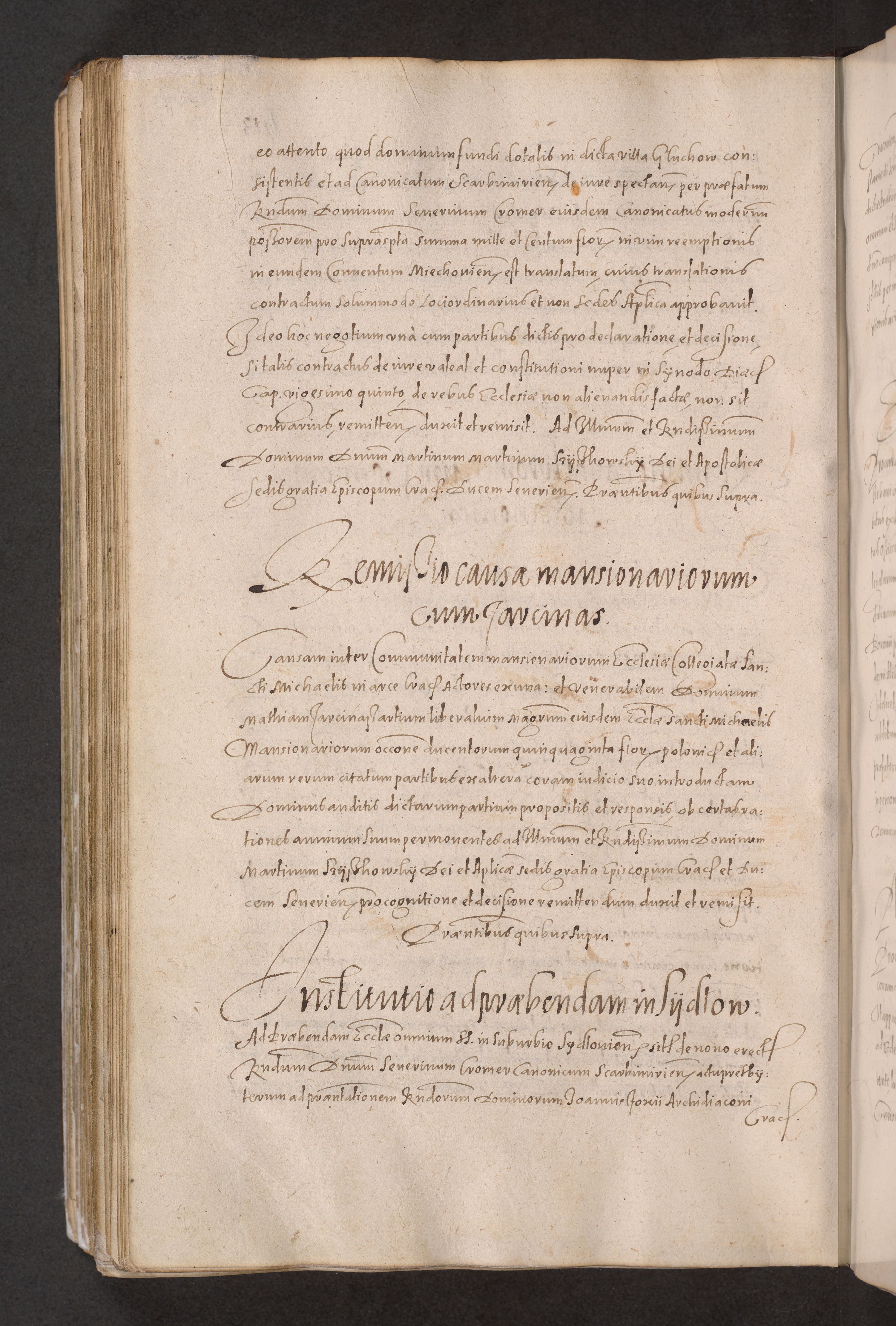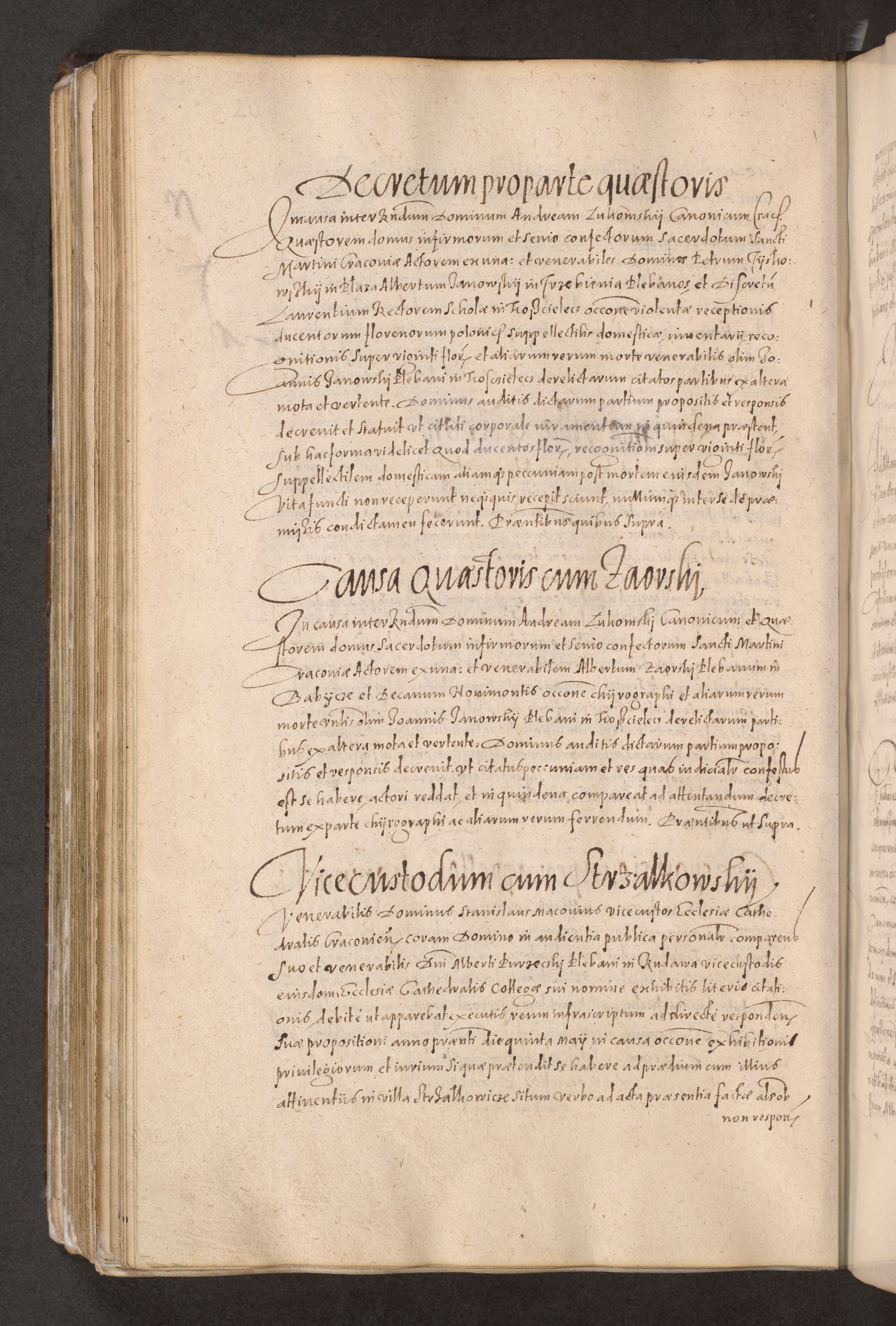 Acta actorum causarum obligationum institutionum decretorum constitutionum quietationum resignationum cissionum et atiaru obsernationum tam indiciariarum quam extra indiciariarum coram Admodum Reverendo Domino Joanne Zerzynski Canonico Vicario in Spiritualibus et Officiali generali Cracoviensis ad Annum Domini Millesimum Sextentissimum Vigesimum Indictione tertia Pontificatus SSmi D. N. D. Pauli Divina pronidentia Papae V. foeliciter moderni anno ipsins subfelici regimine Diocesis Cracoviensis Illustrissimi ac Reverendissimi D. N. D. Martini Szyszkowski Deigratia Episcopus Cracoviensis Ducis Severiensis in continuantur.