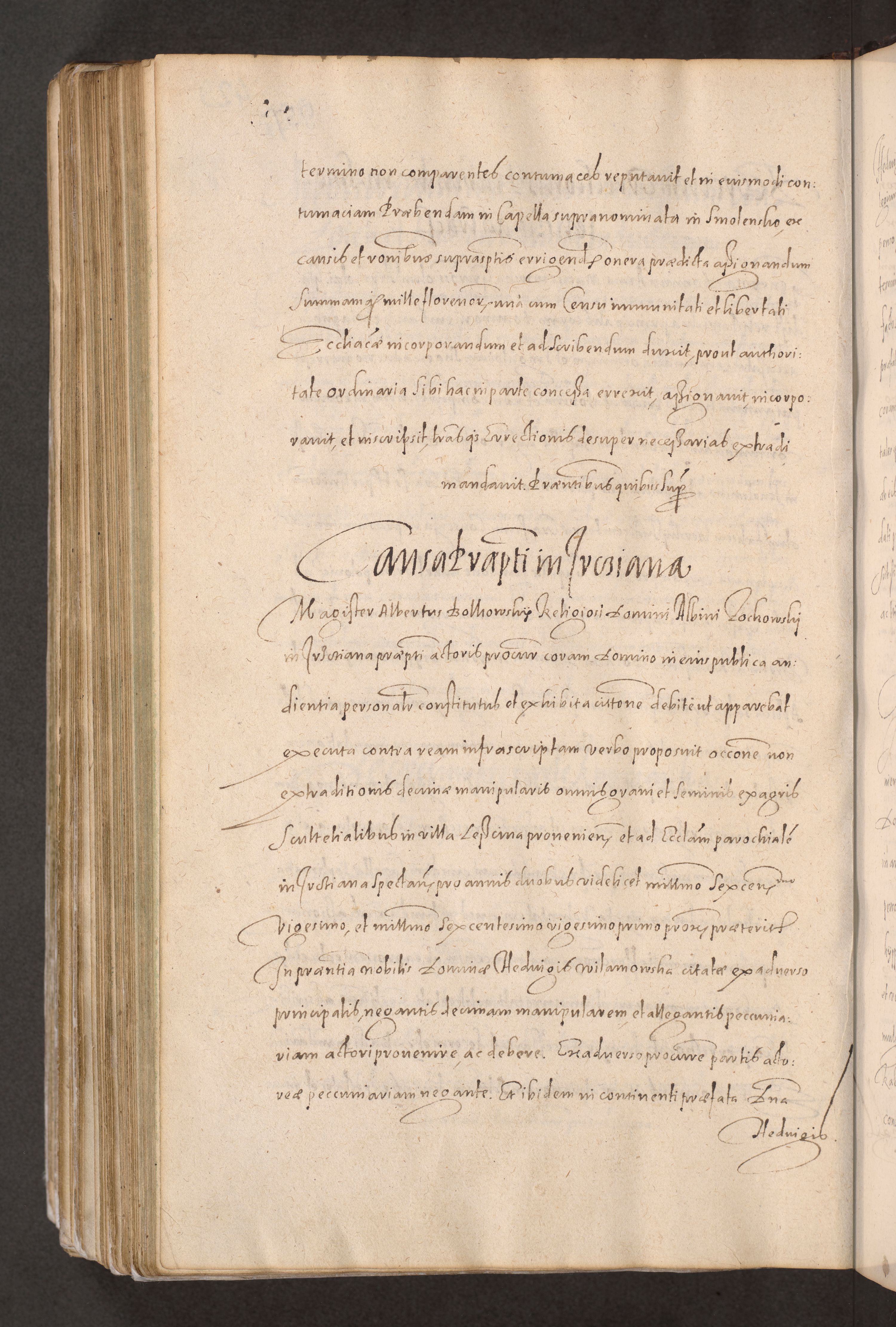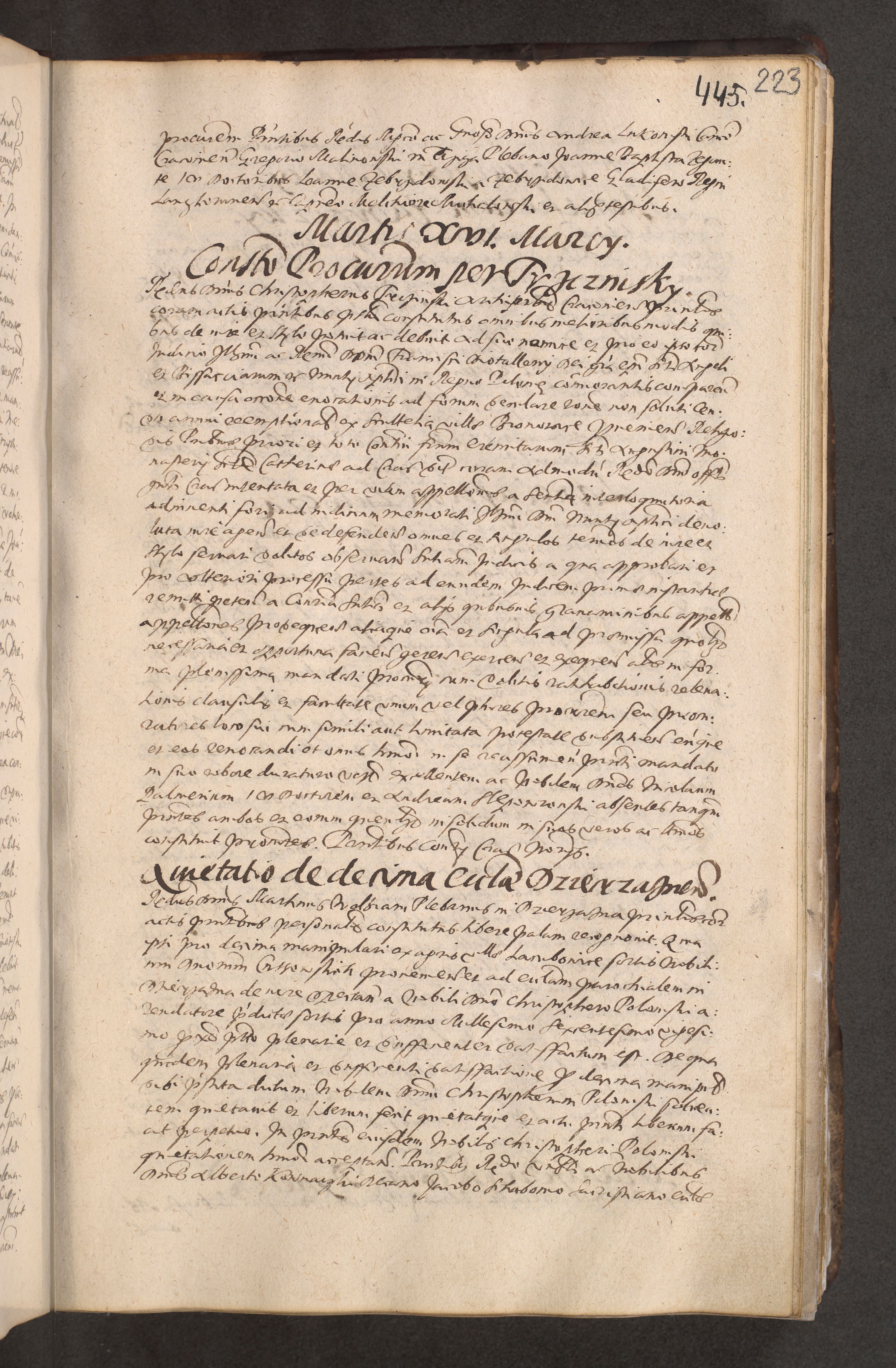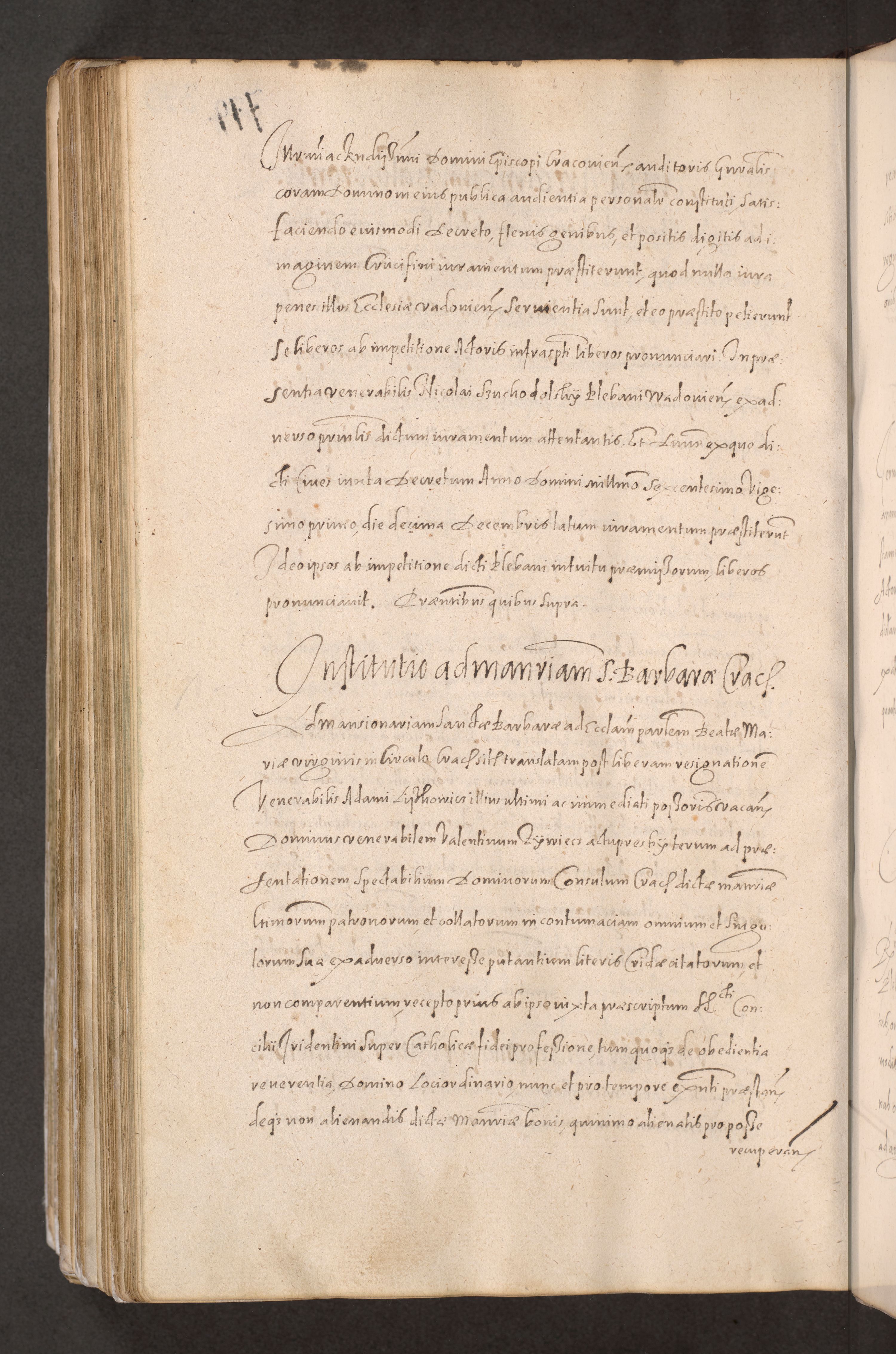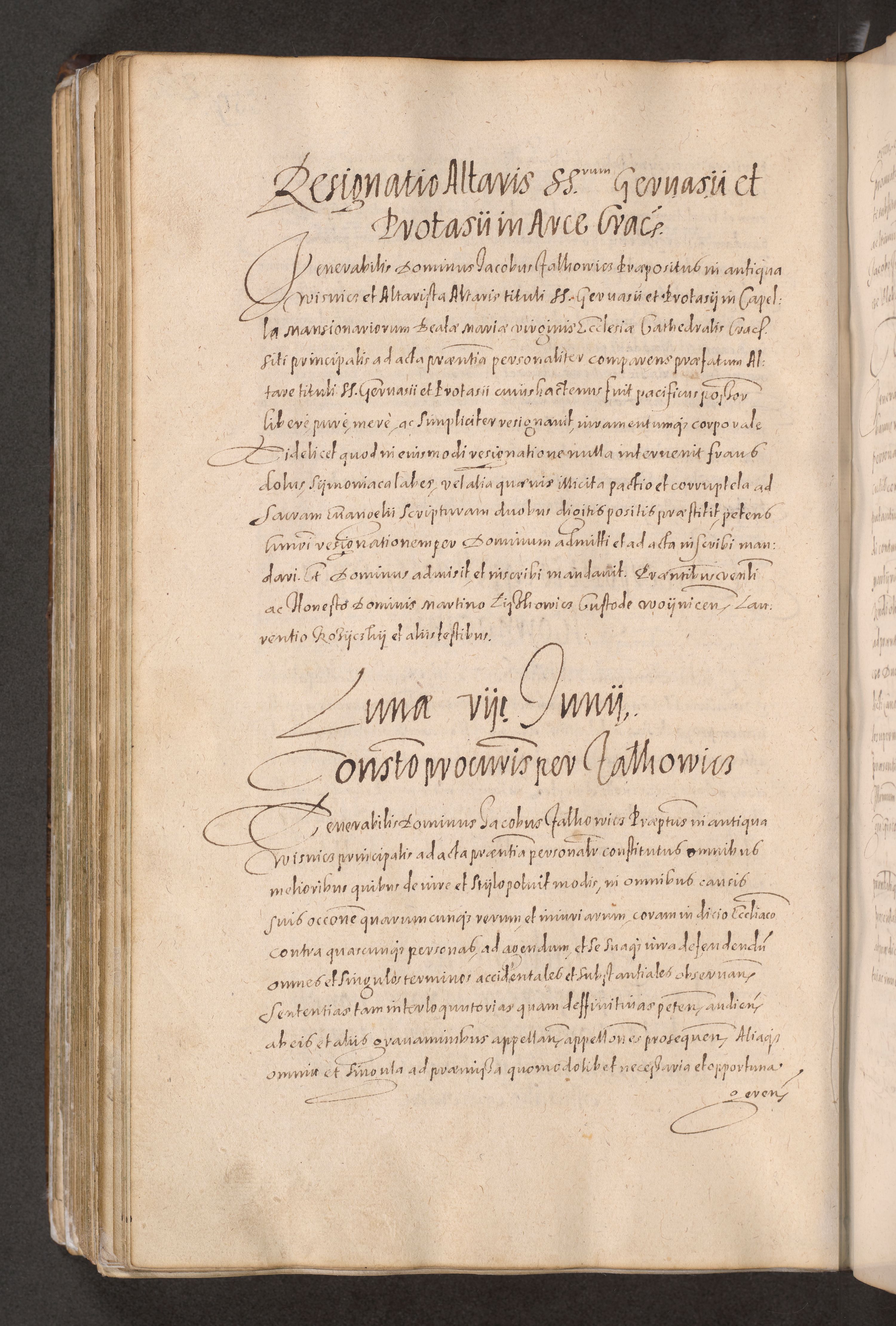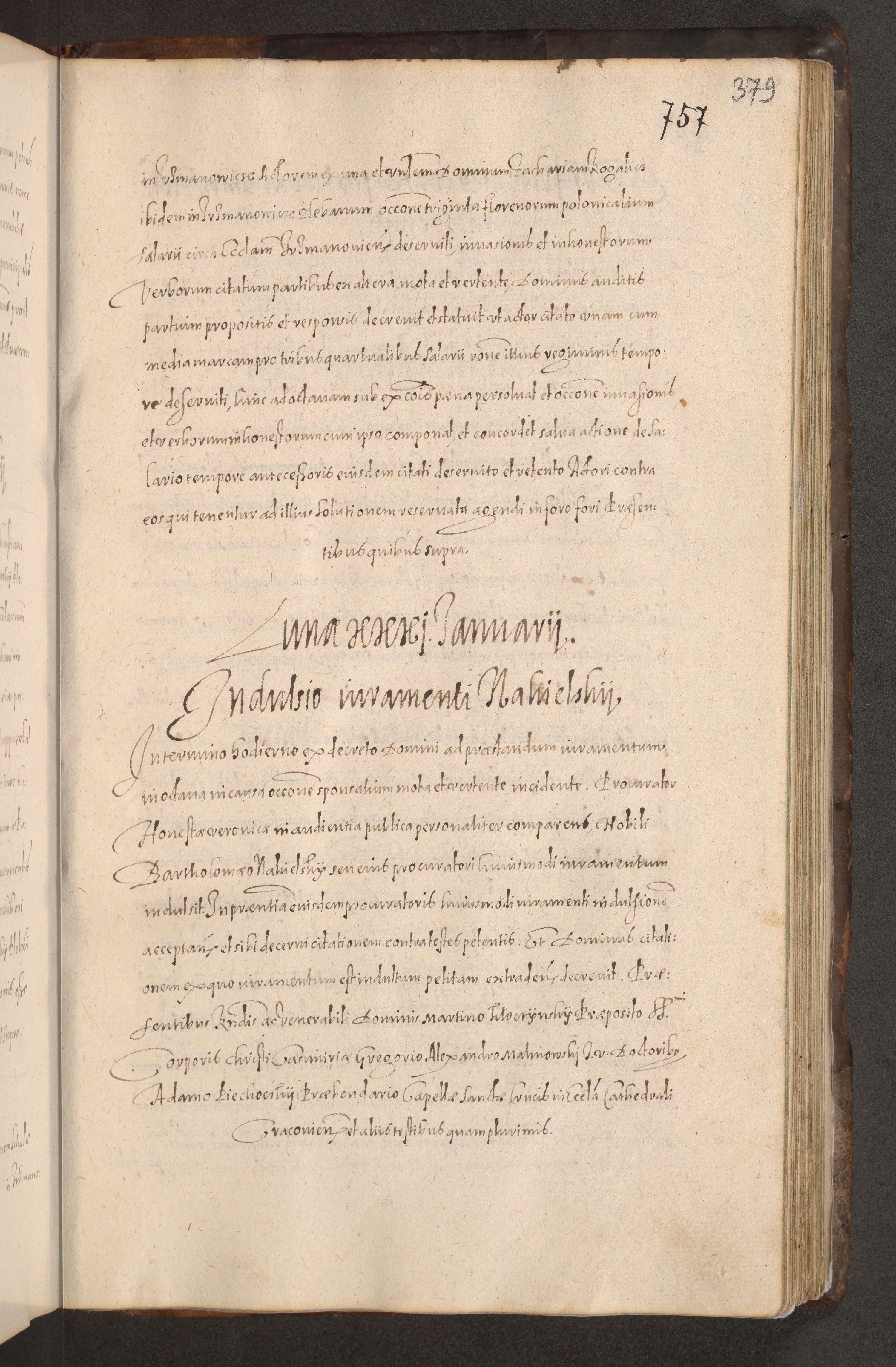 Acta actorum causarum obligationum institutionum decretorum constitutionum quietationum resignationum cissionum et atiaru obsernationum tam indiciariarum quam extra indiciariarum coram Admodum Reverendo Domino Joanne Zerzynski Canonico Vicario in Spiritualibus et Officiali generali Cracoviensis ad Annum Domini Millesimum Sextentissimum Vigesimum Indictione tertia Pontificatus SSmi D. N. D. Pauli Divina pronidentia Papae V. foeliciter moderni anno ipsins subfelici regimine Diocesis Cracoviensis Illustrissimi ac Reverendissimi D. N. D. Martini Szyszkowski Deigratia Episcopus Cracoviensis Ducis Severiensis in continuantur.