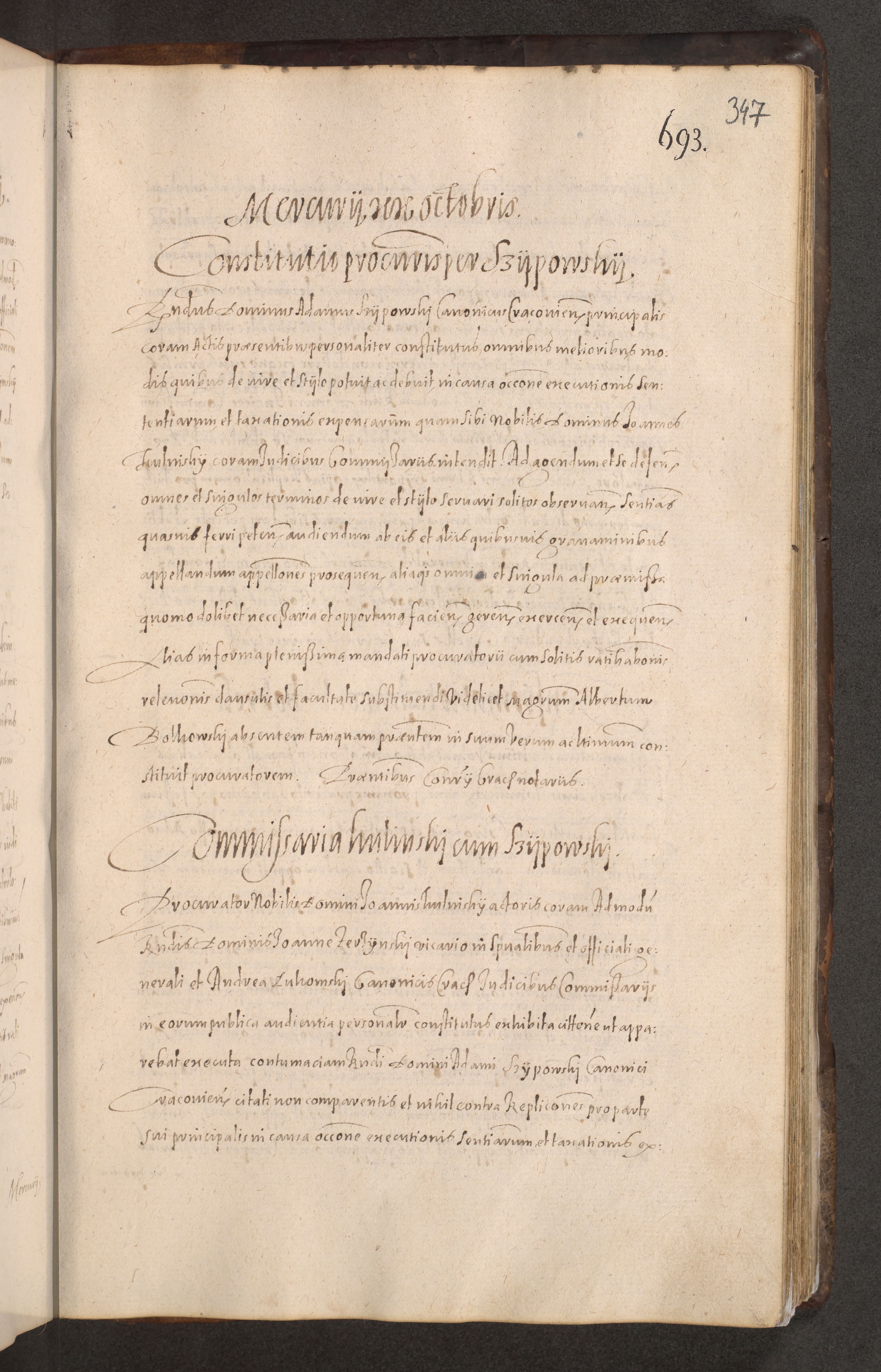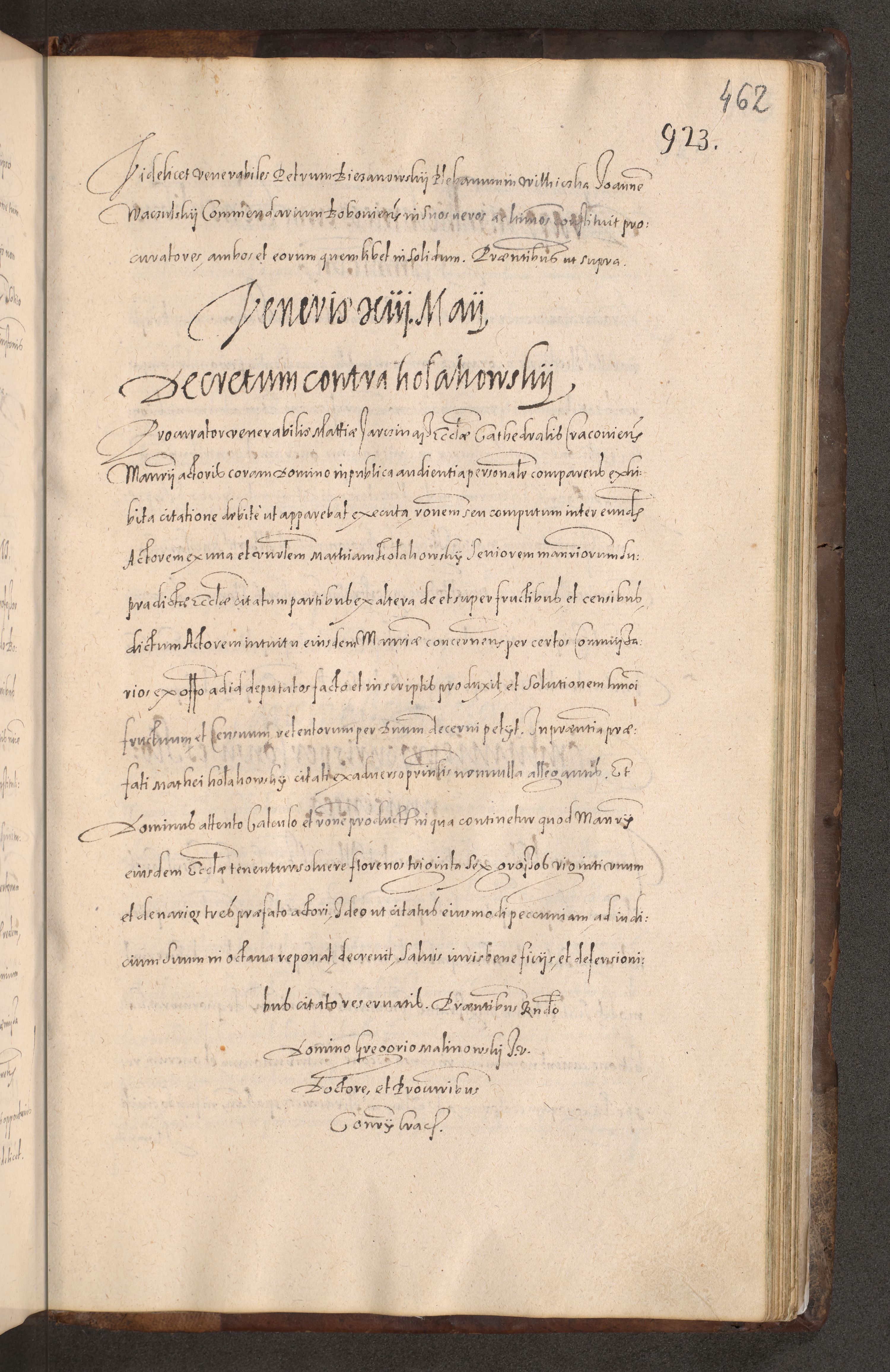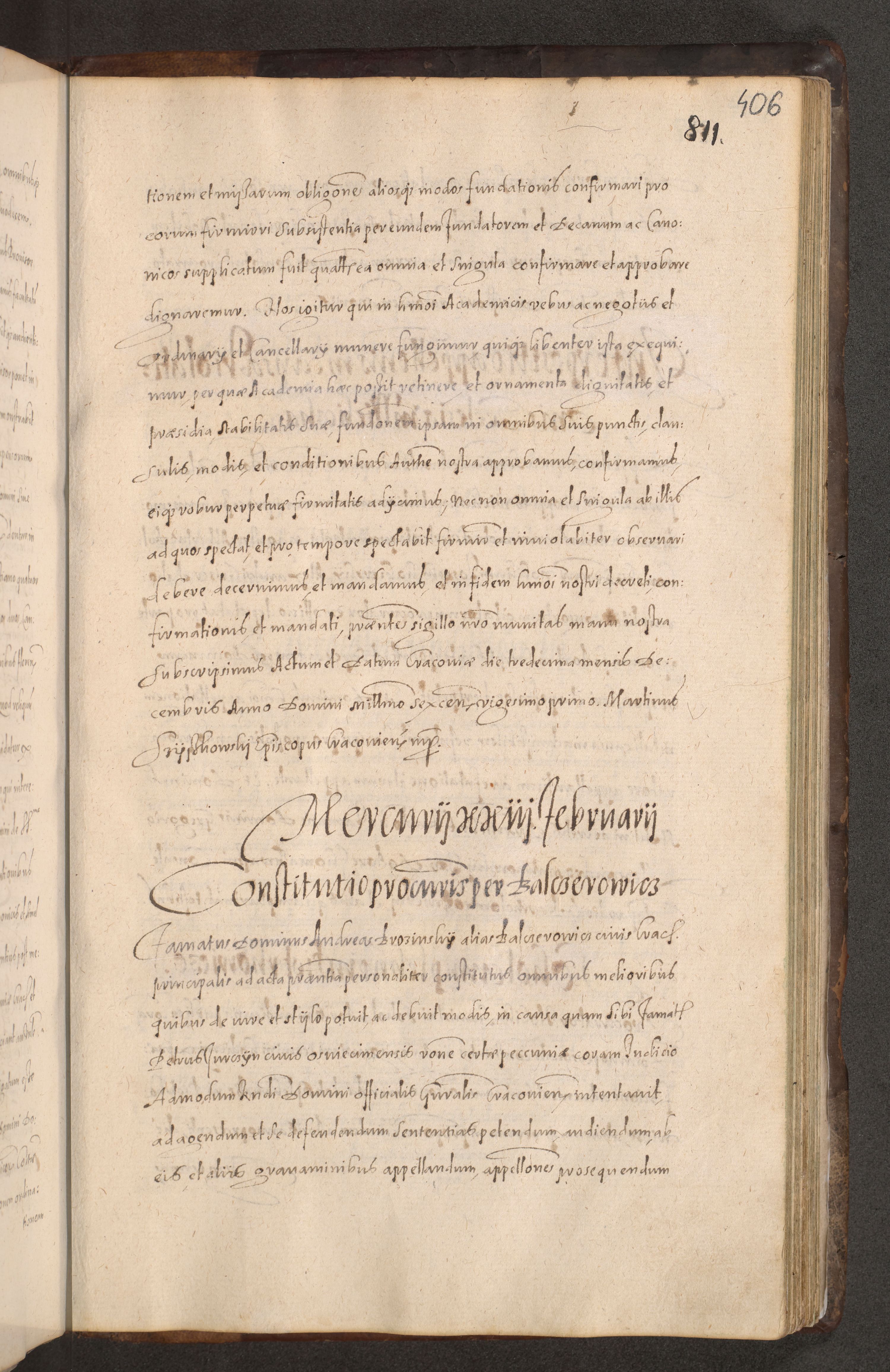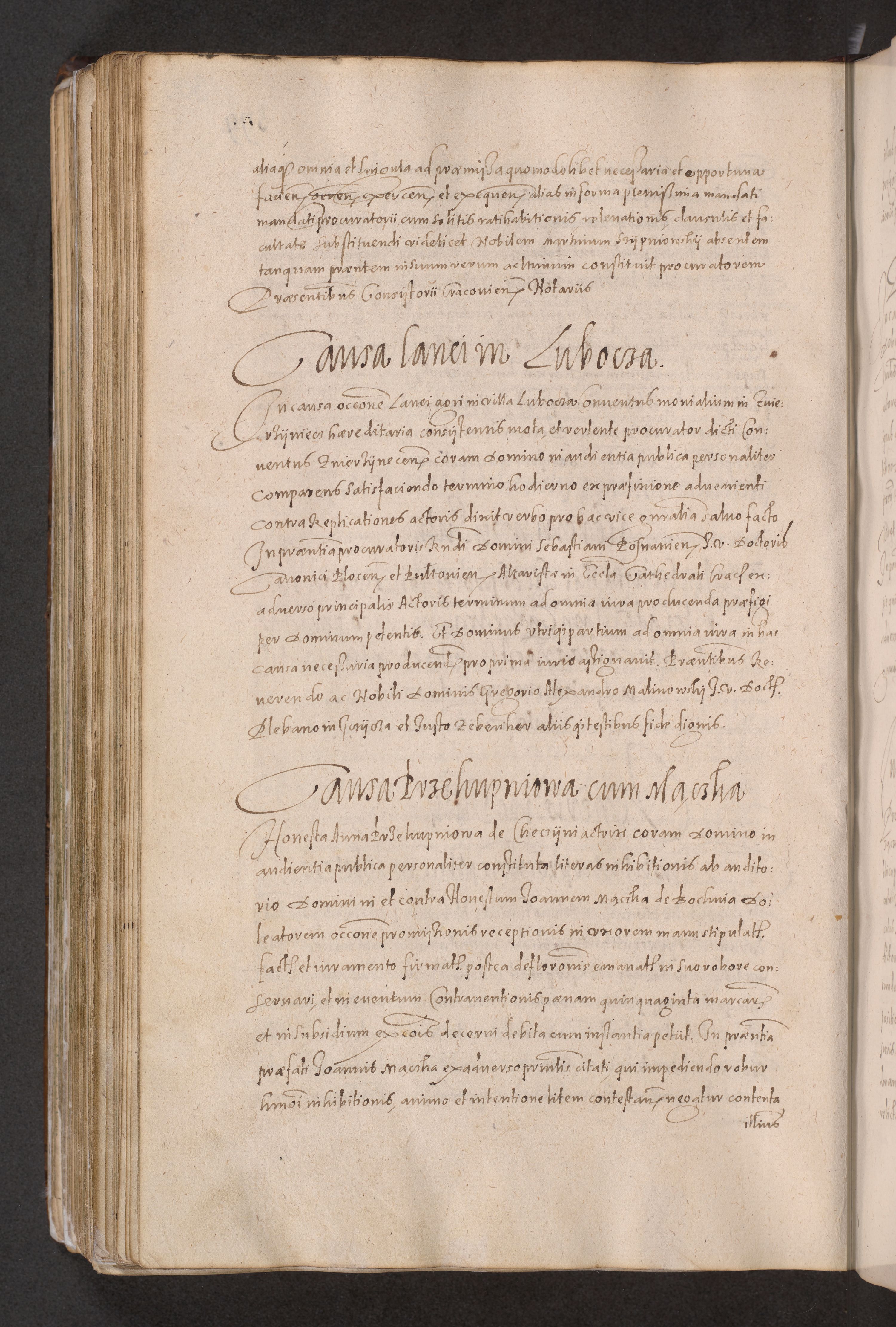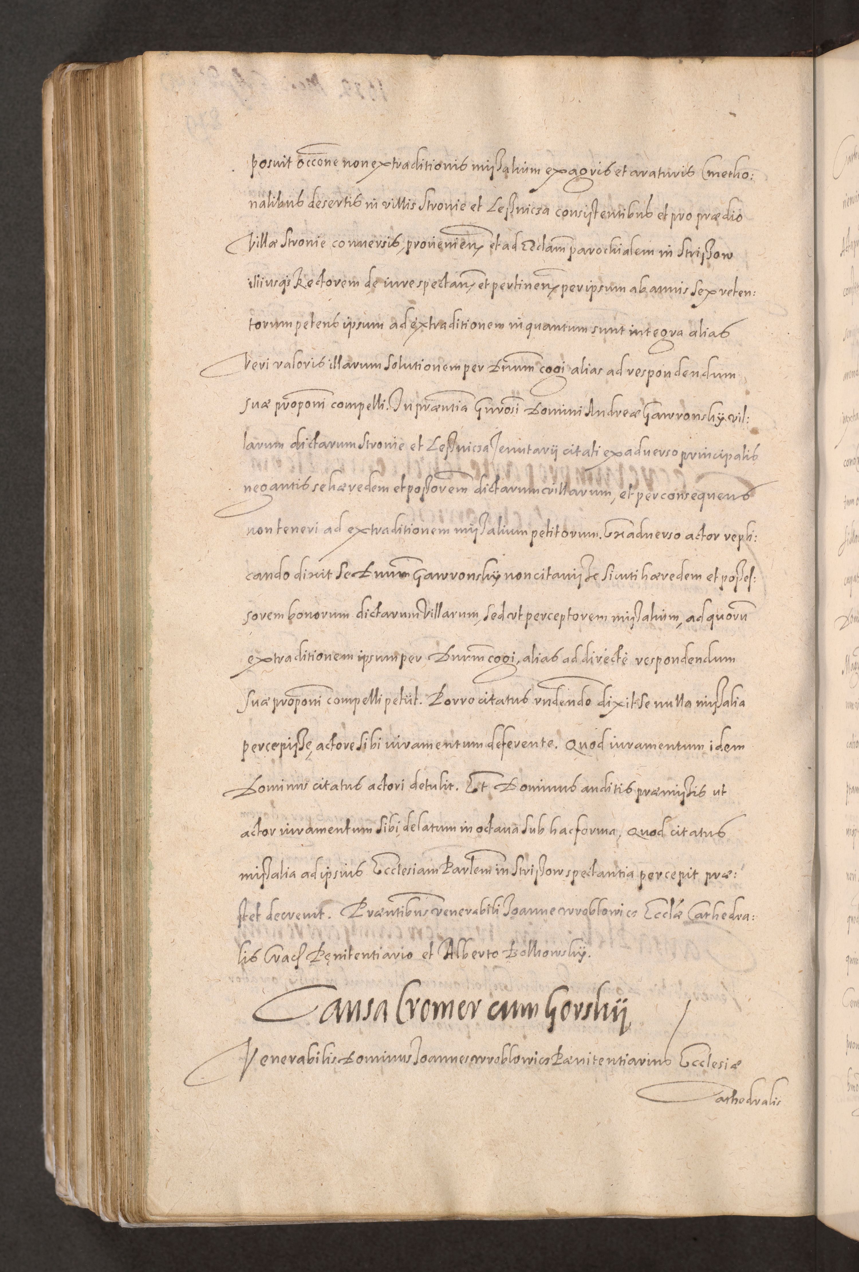 Acta actorum causarum obligationum institutionum decretorum constitutionum quietationum resignationum cissionum et atiaru obsernationum tam indiciariarum quam extra indiciariarum coram Admodum Reverendo Domino Joanne Zerzynski Canonico Vicario in Spiritualibus et Officiali generali Cracoviensis ad Annum Domini Millesimum Sextentissimum Vigesimum Indictione tertia Pontificatus SSmi D. N. D. Pauli Divina pronidentia Papae V. foeliciter moderni anno ipsins subfelici regimine Diocesis Cracoviensis Illustrissimi ac Reverendissimi D. N. D. Martini Szyszkowski Deigratia Episcopus Cracoviensis Ducis Severiensis in continuantur.